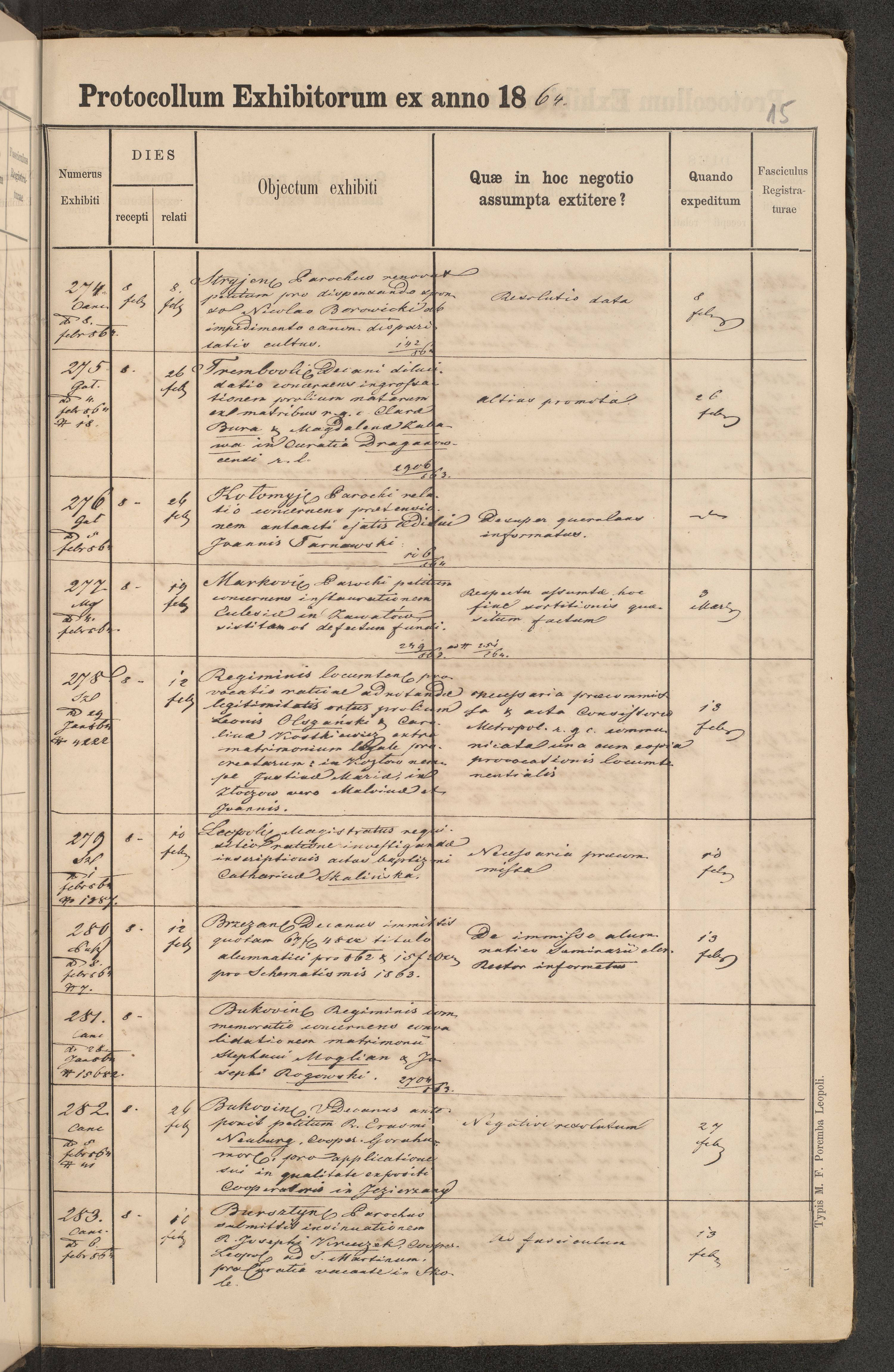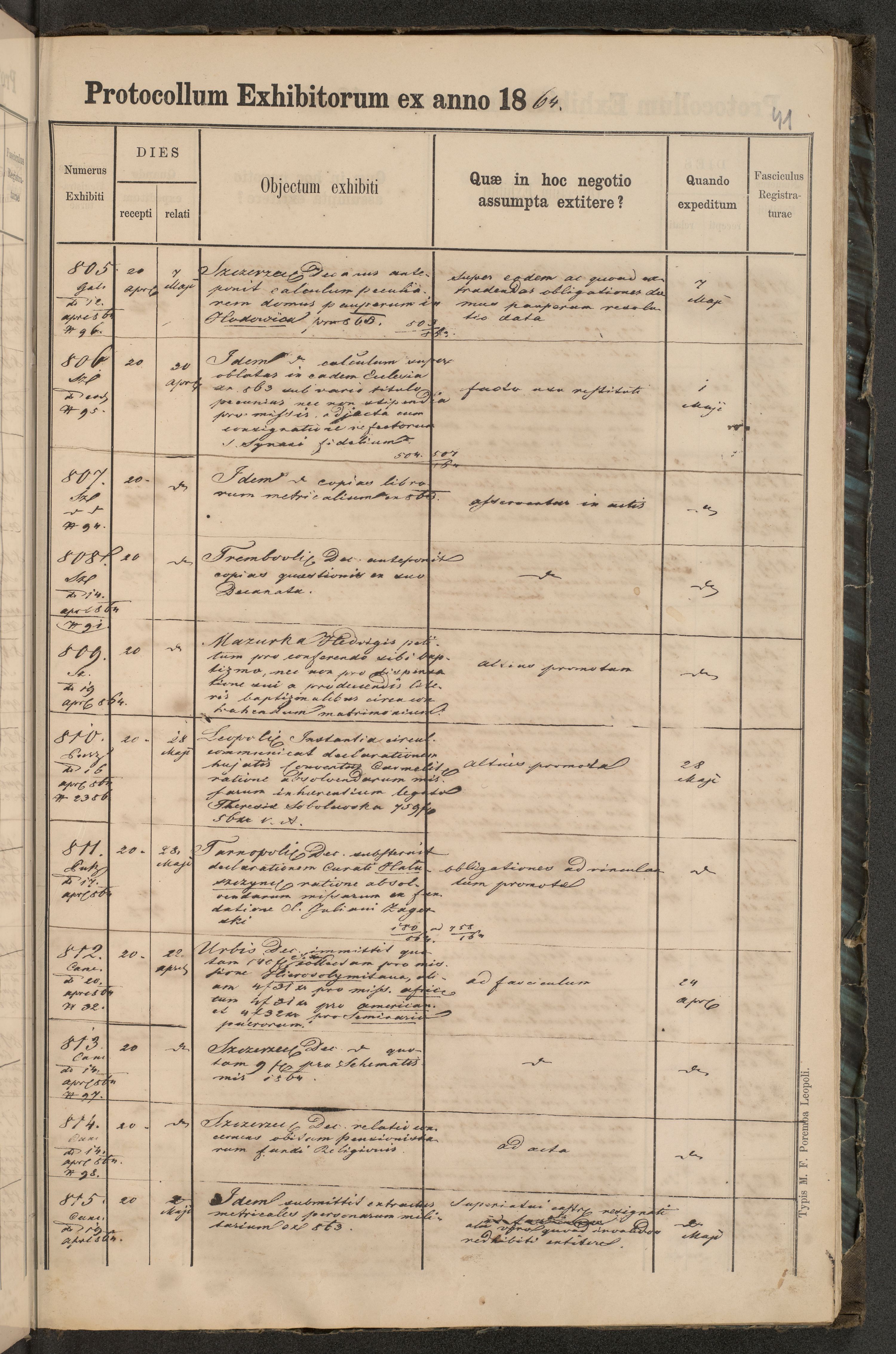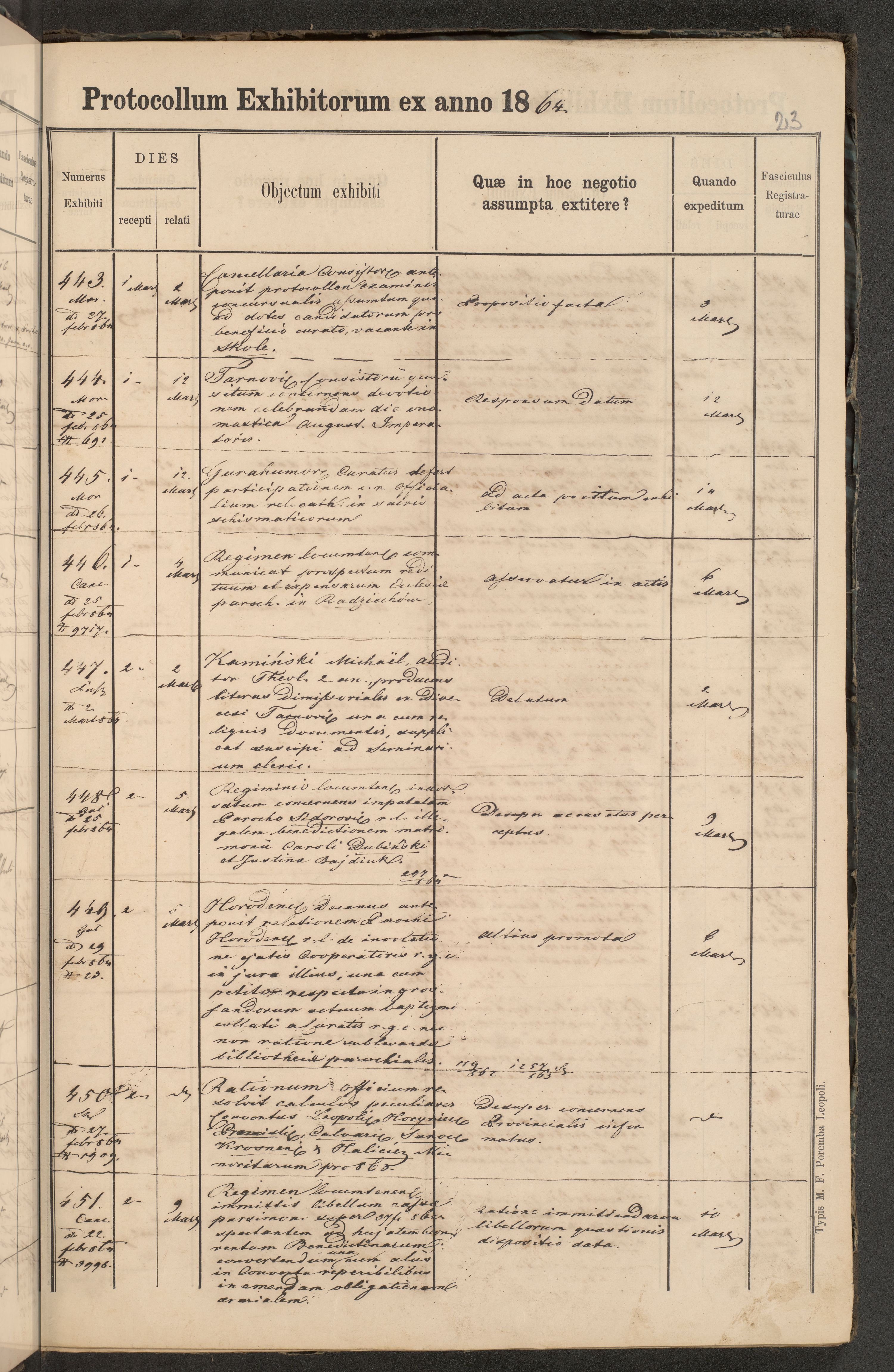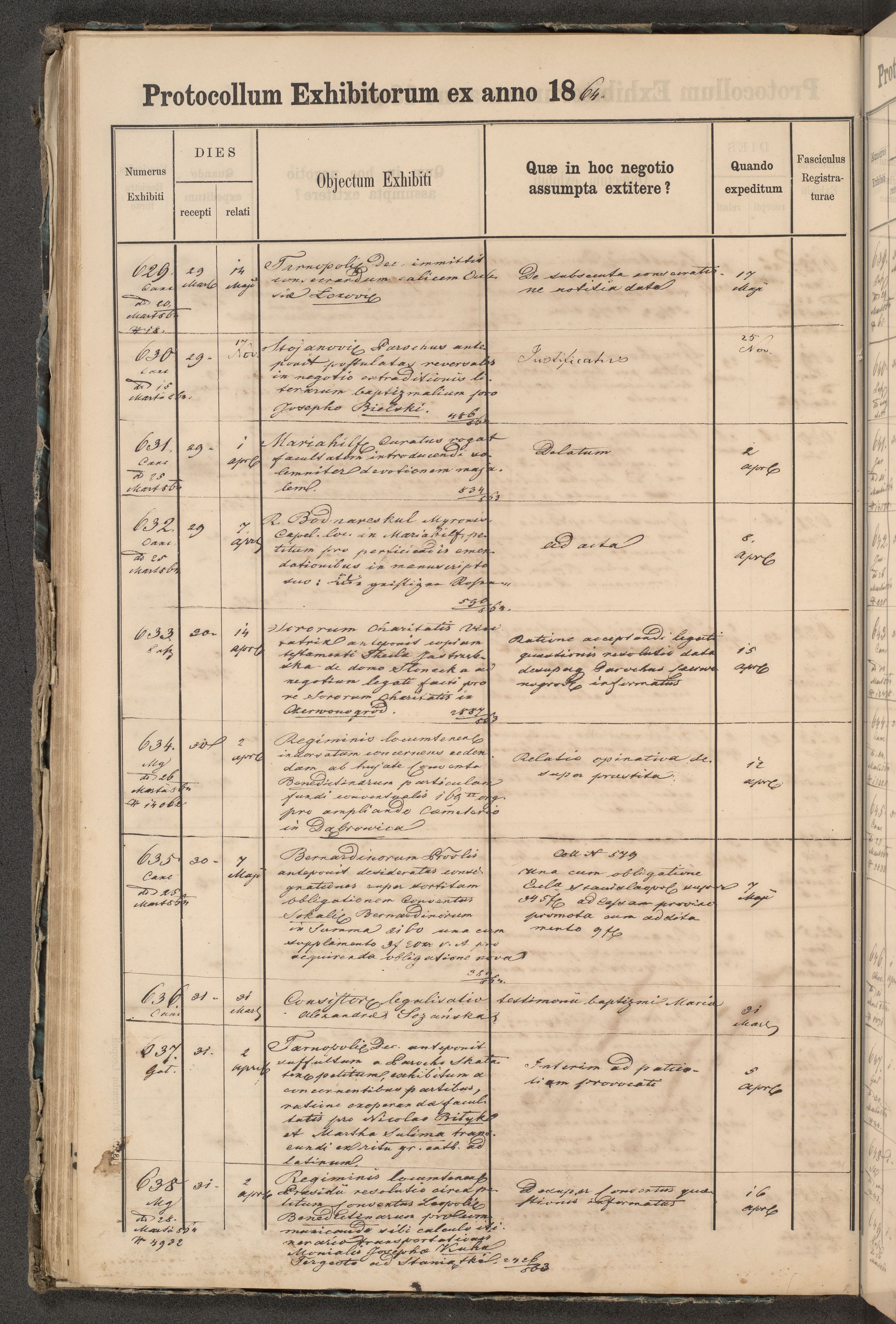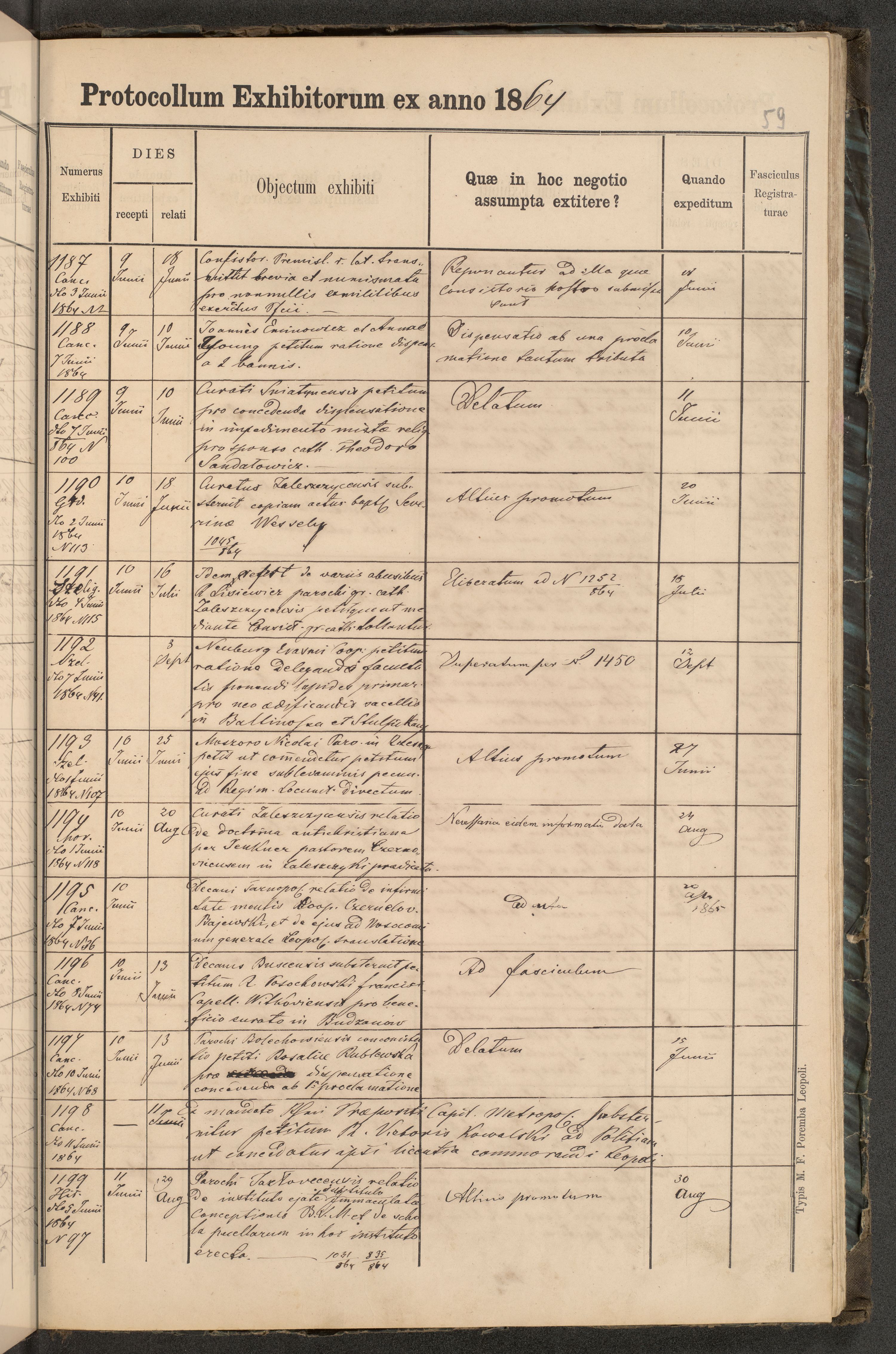 Protocollon exhibitorum in Ecclesiasticis ex anno 1864