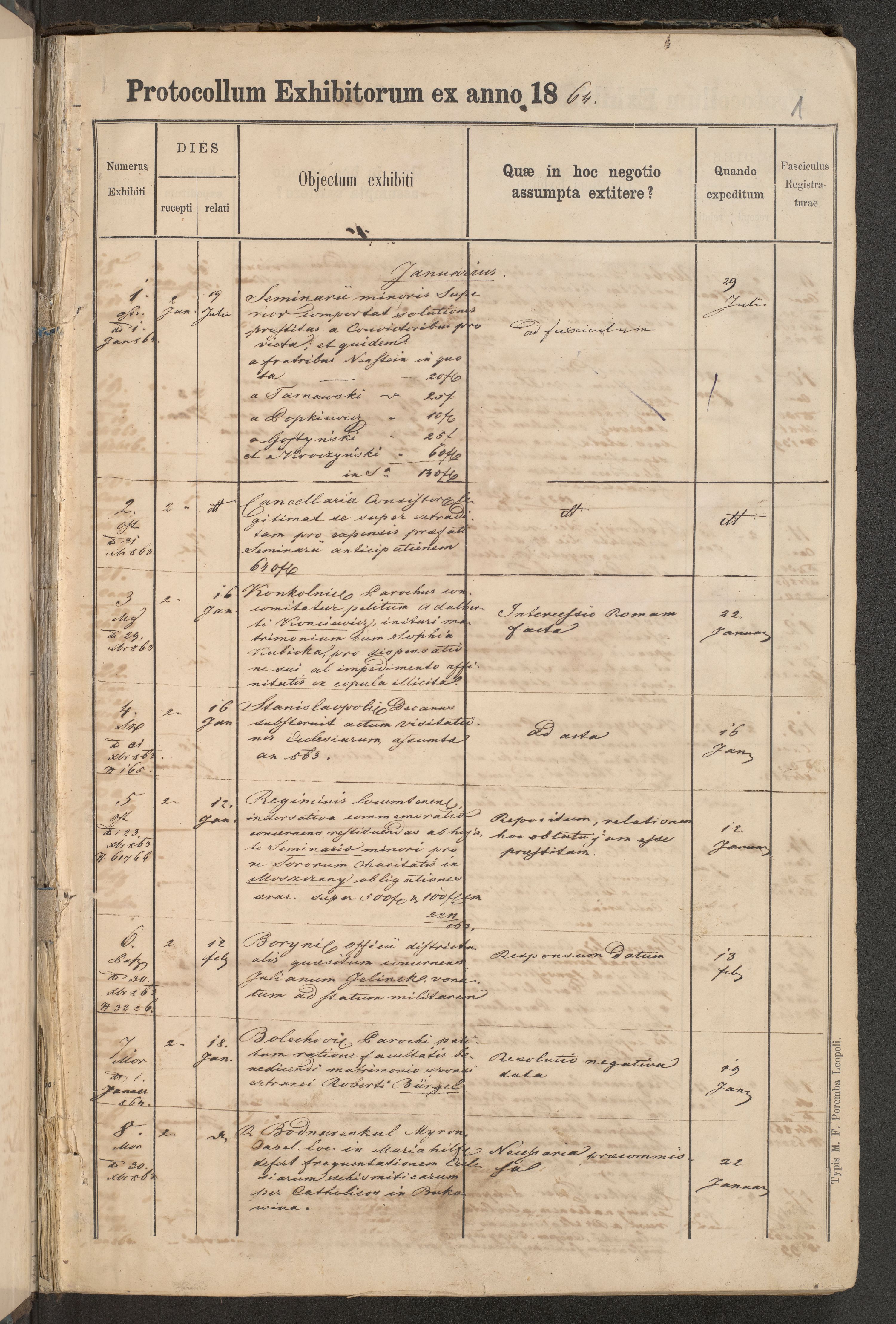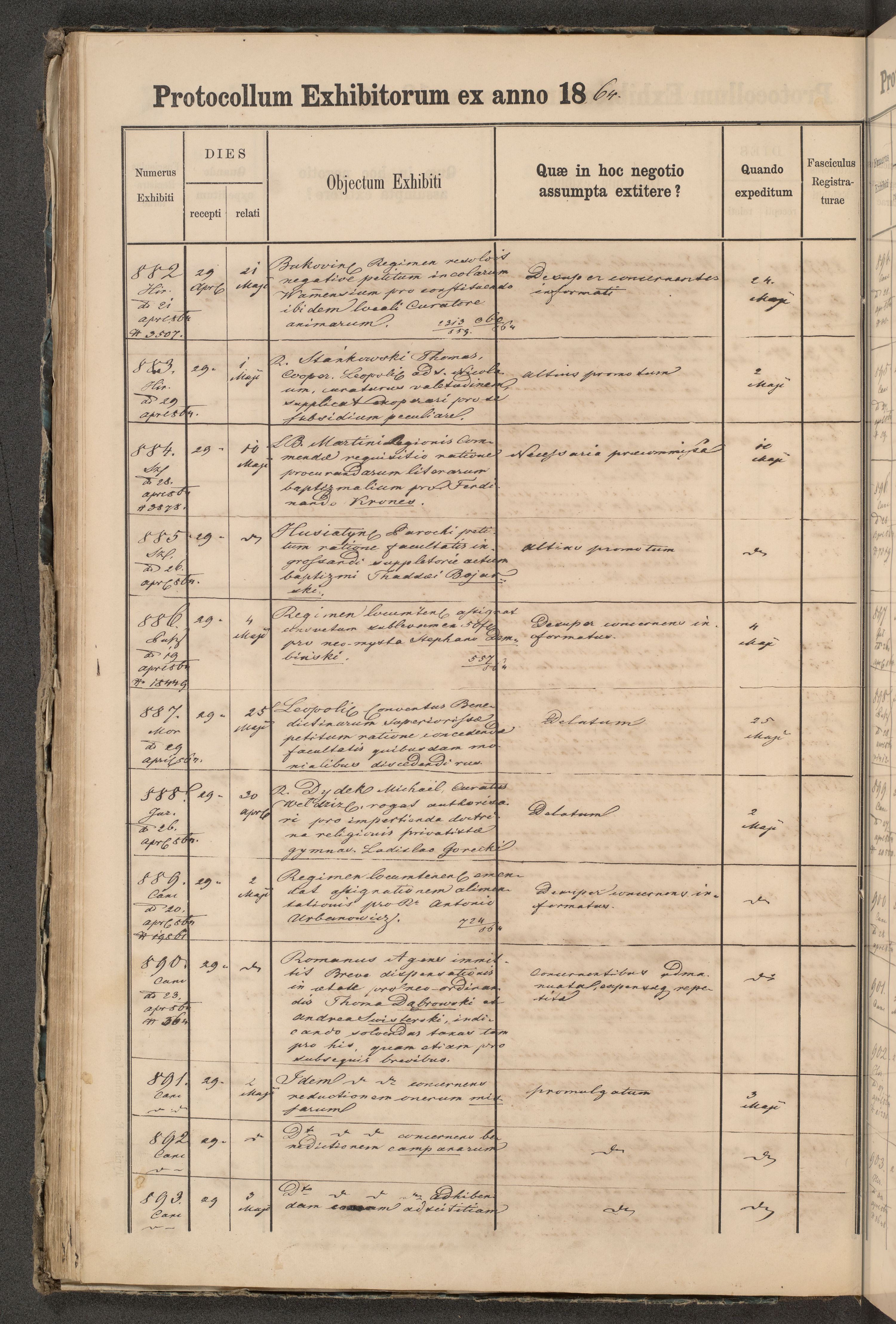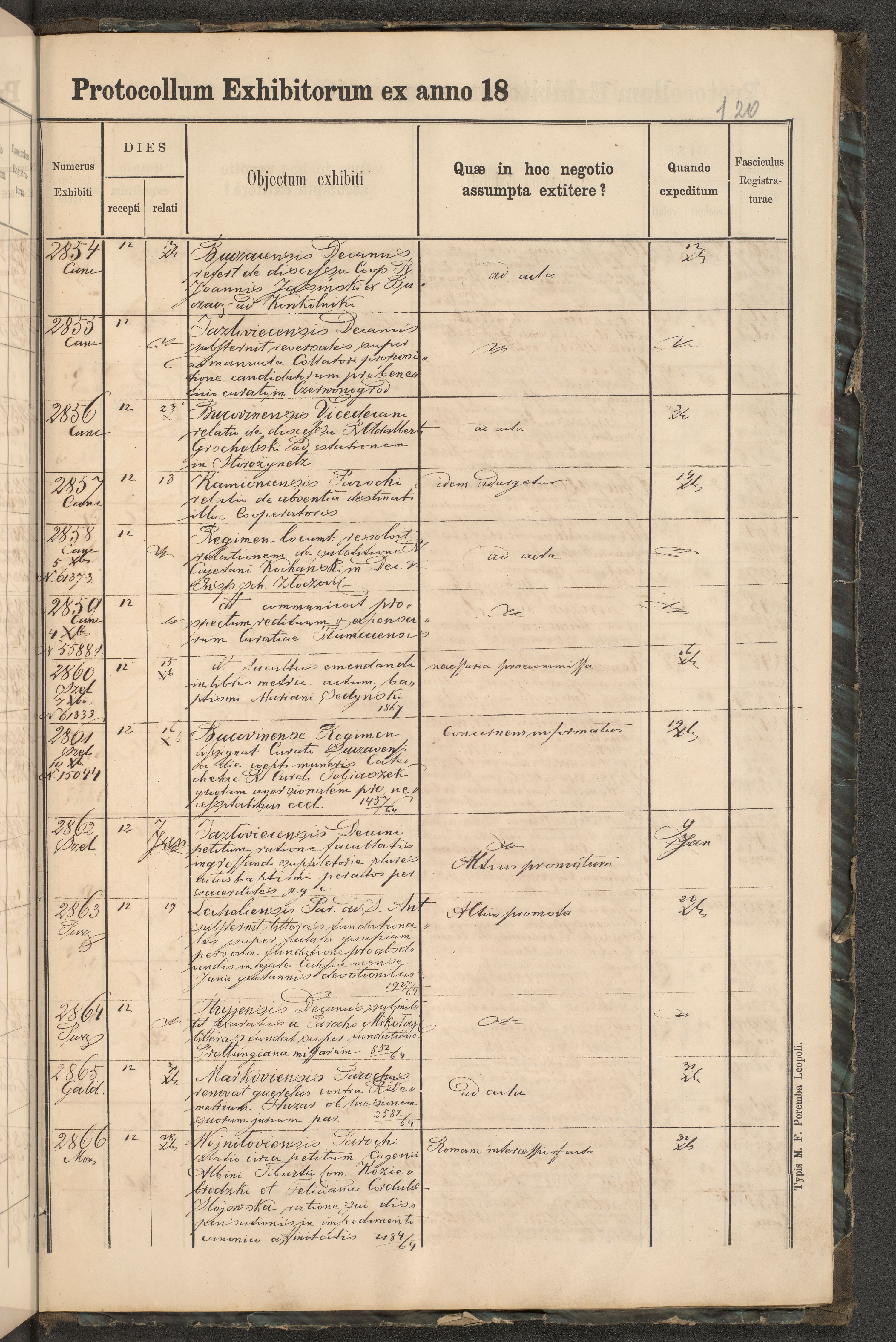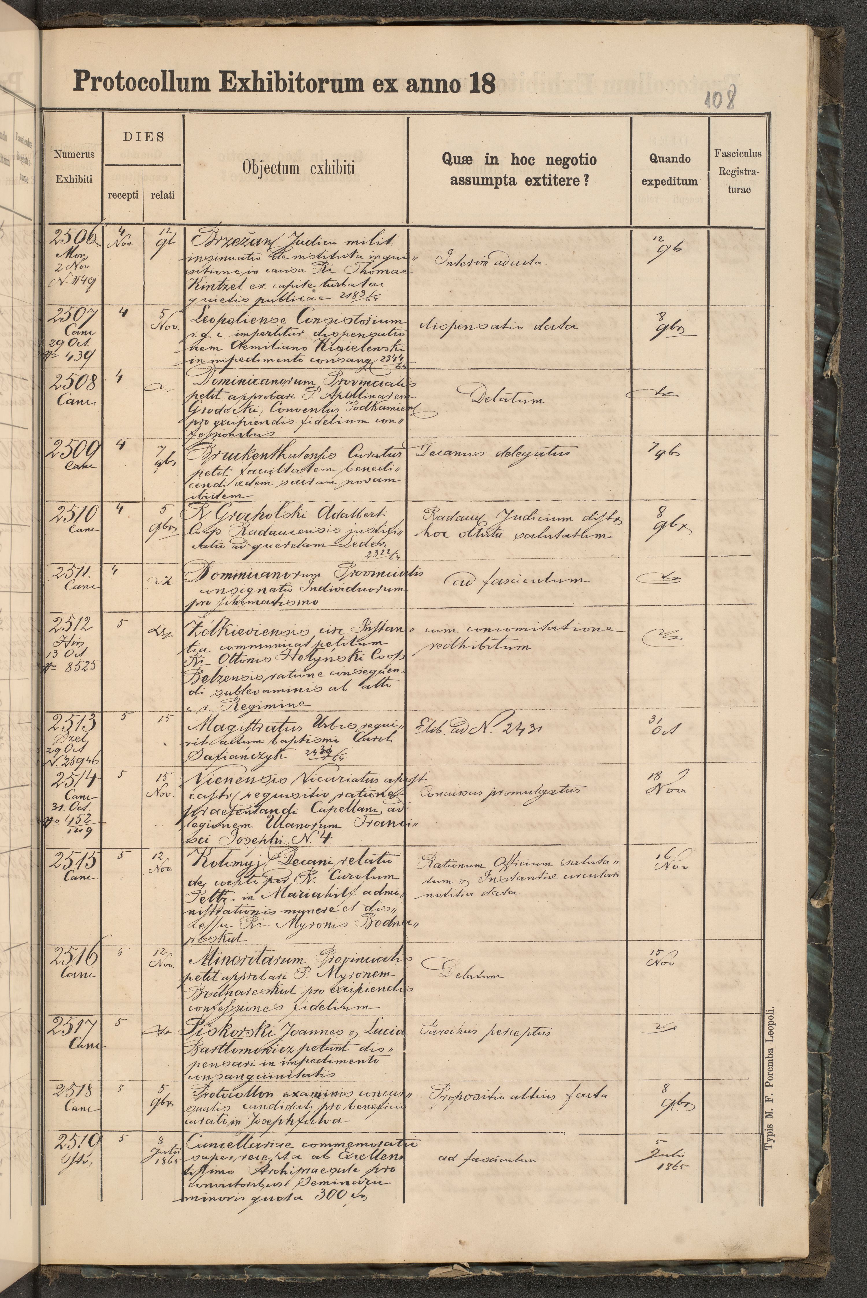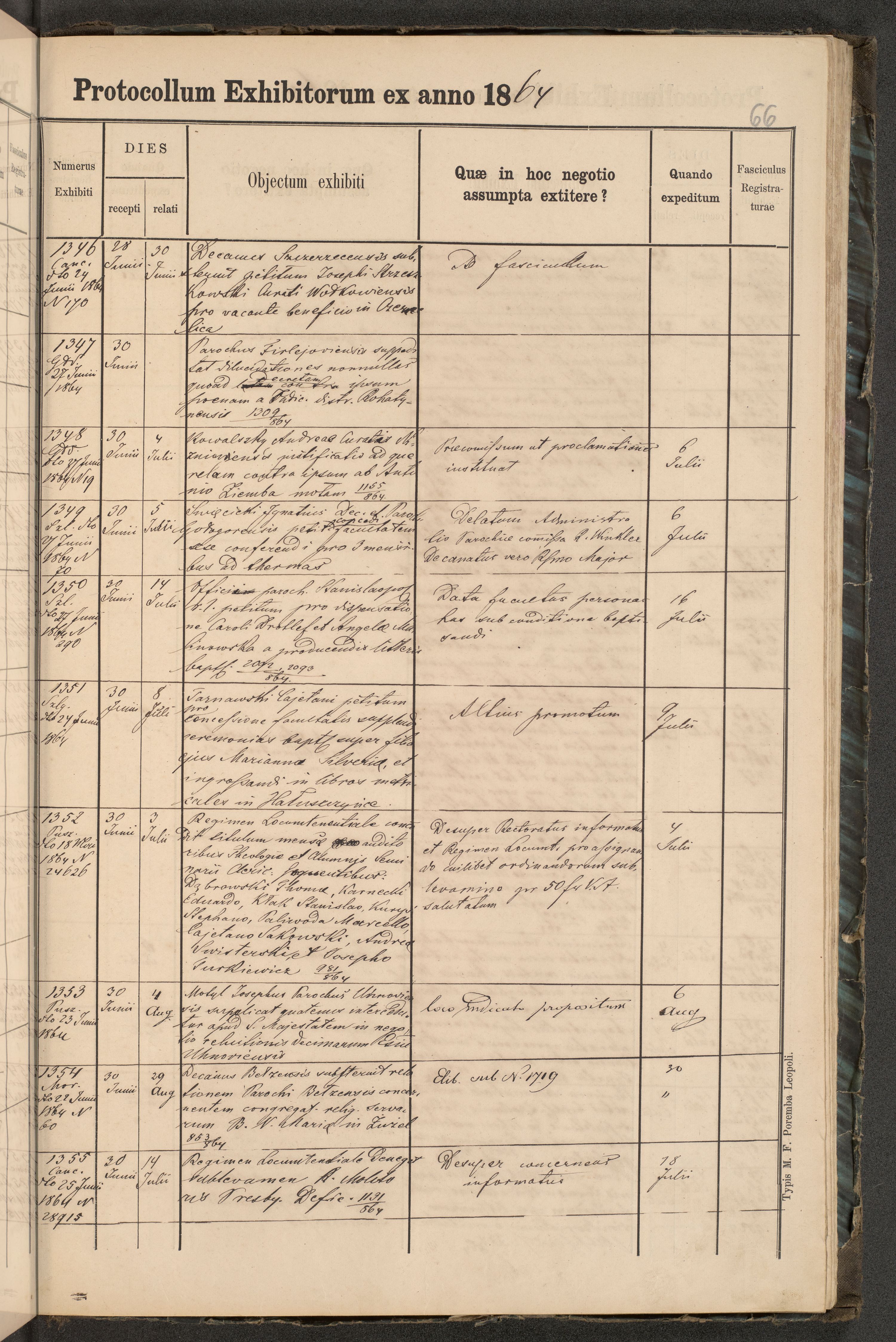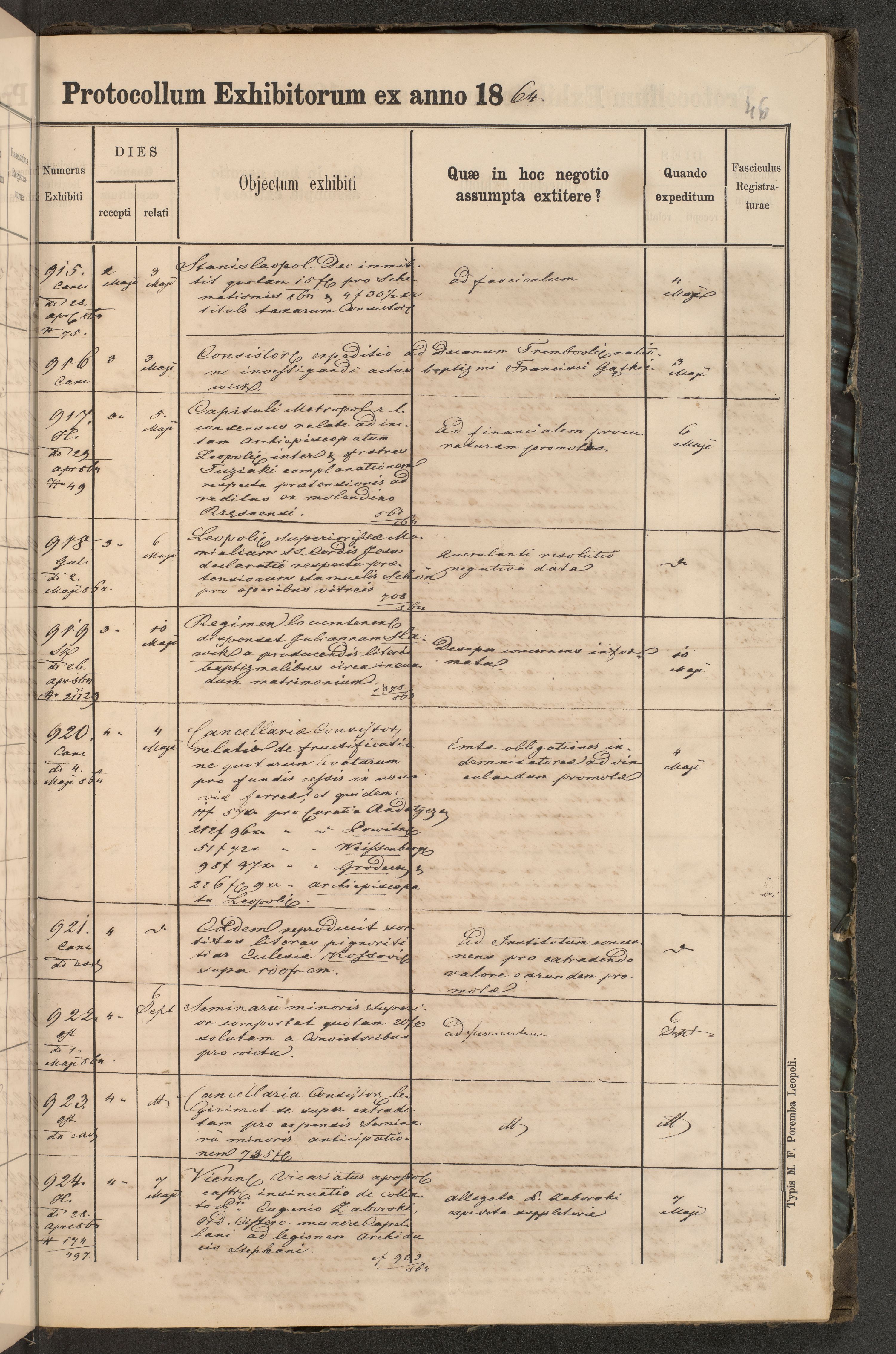 Protocollon exhibitorum in Ecclesiasticis ex anno 1864