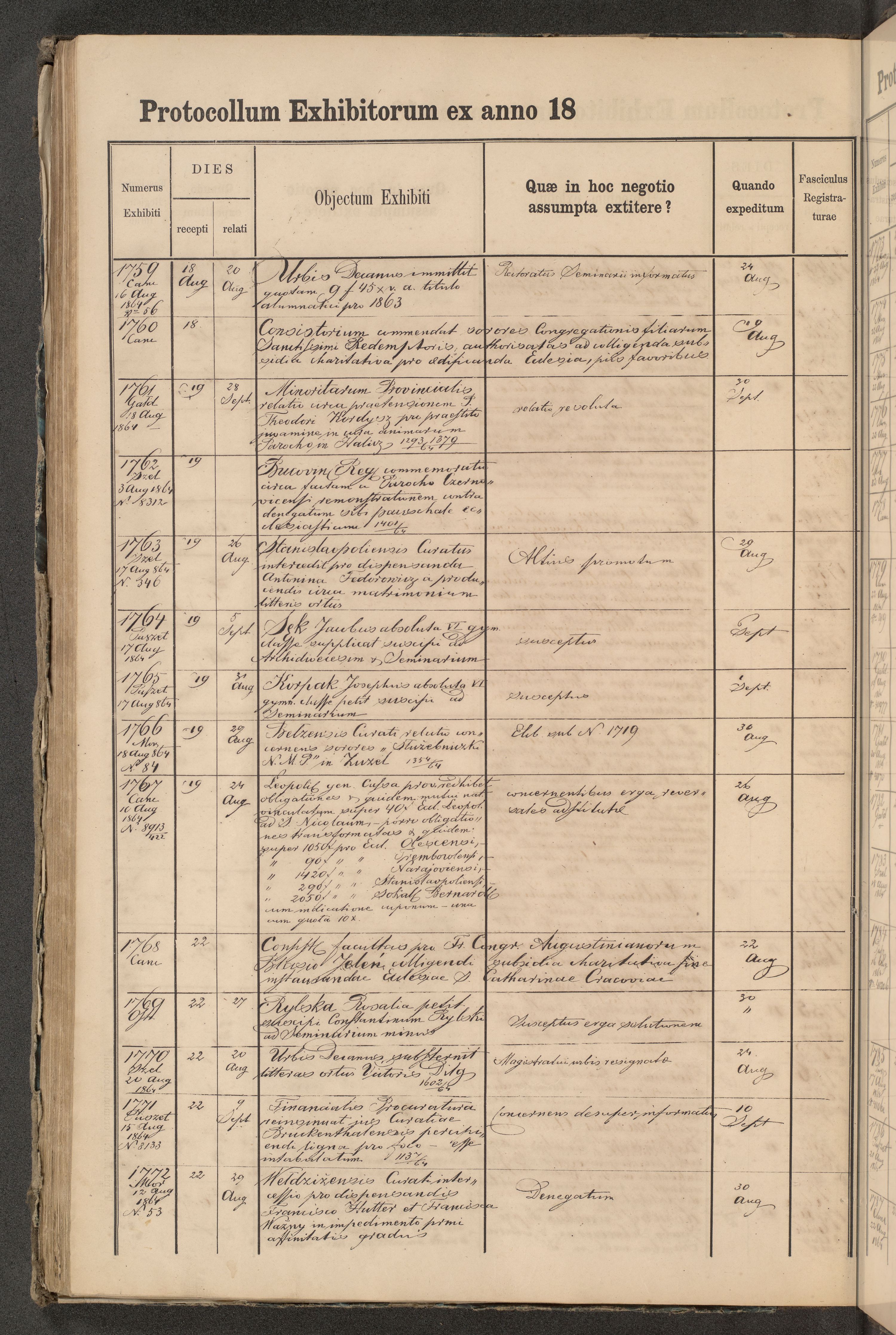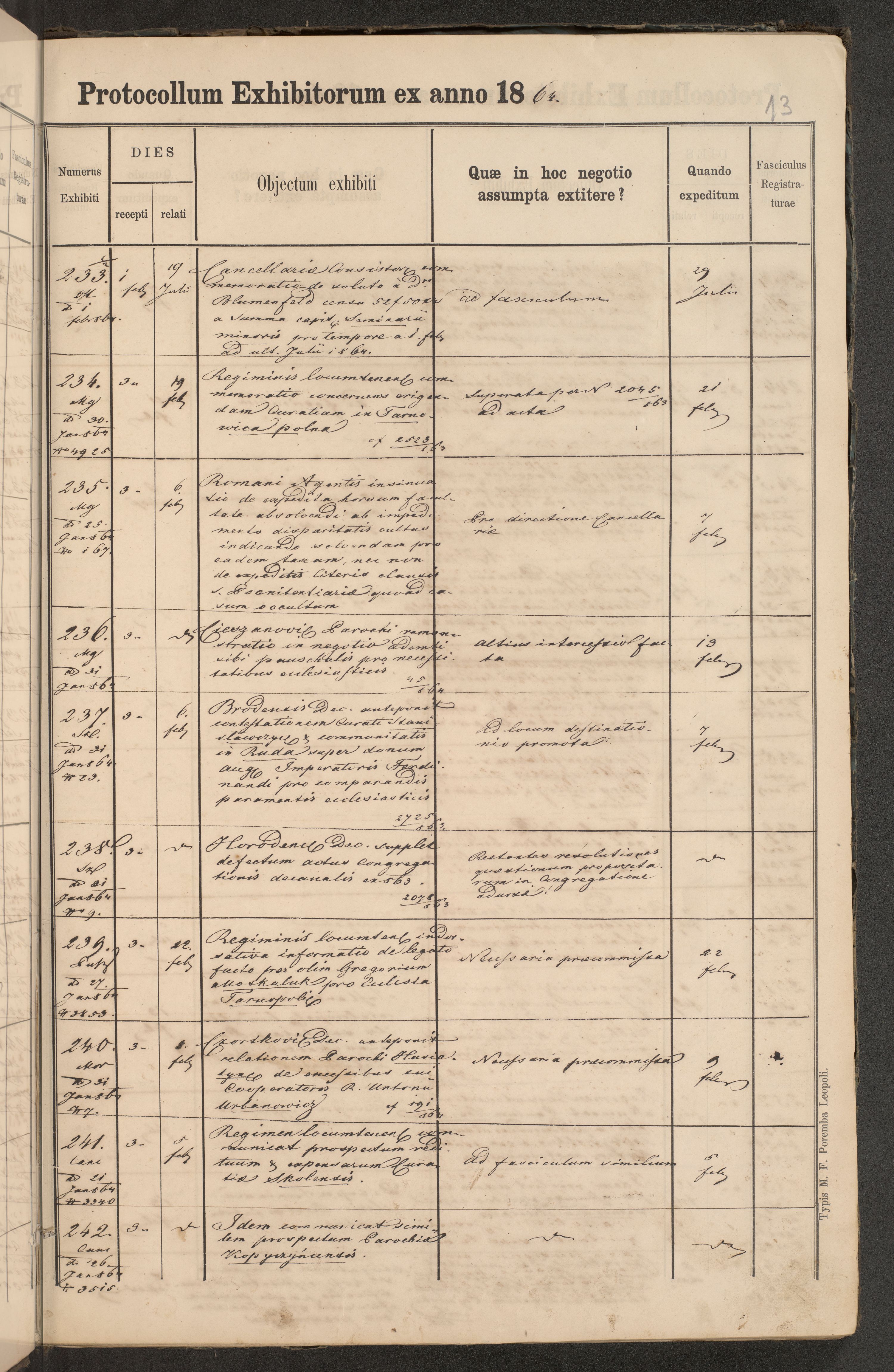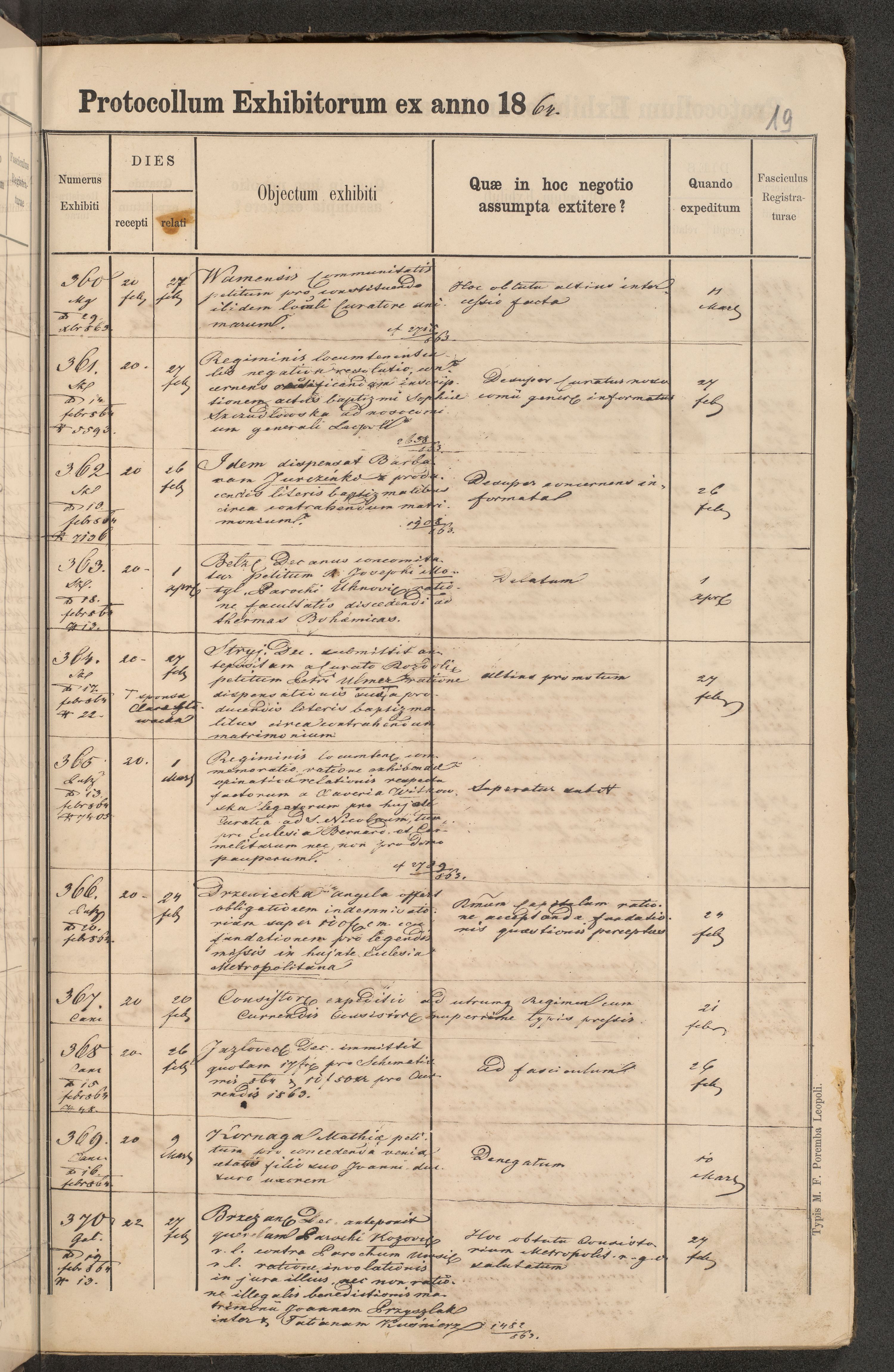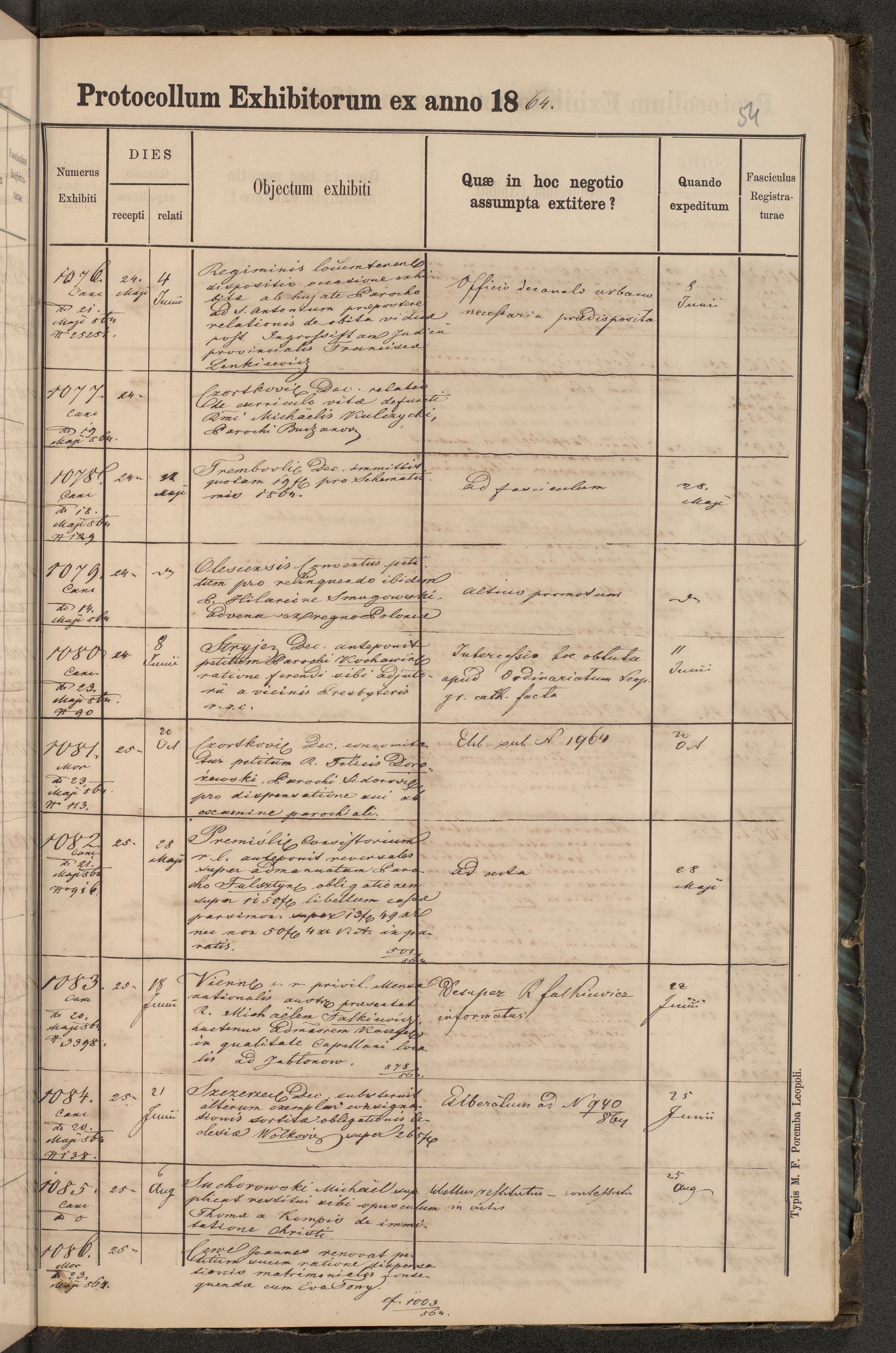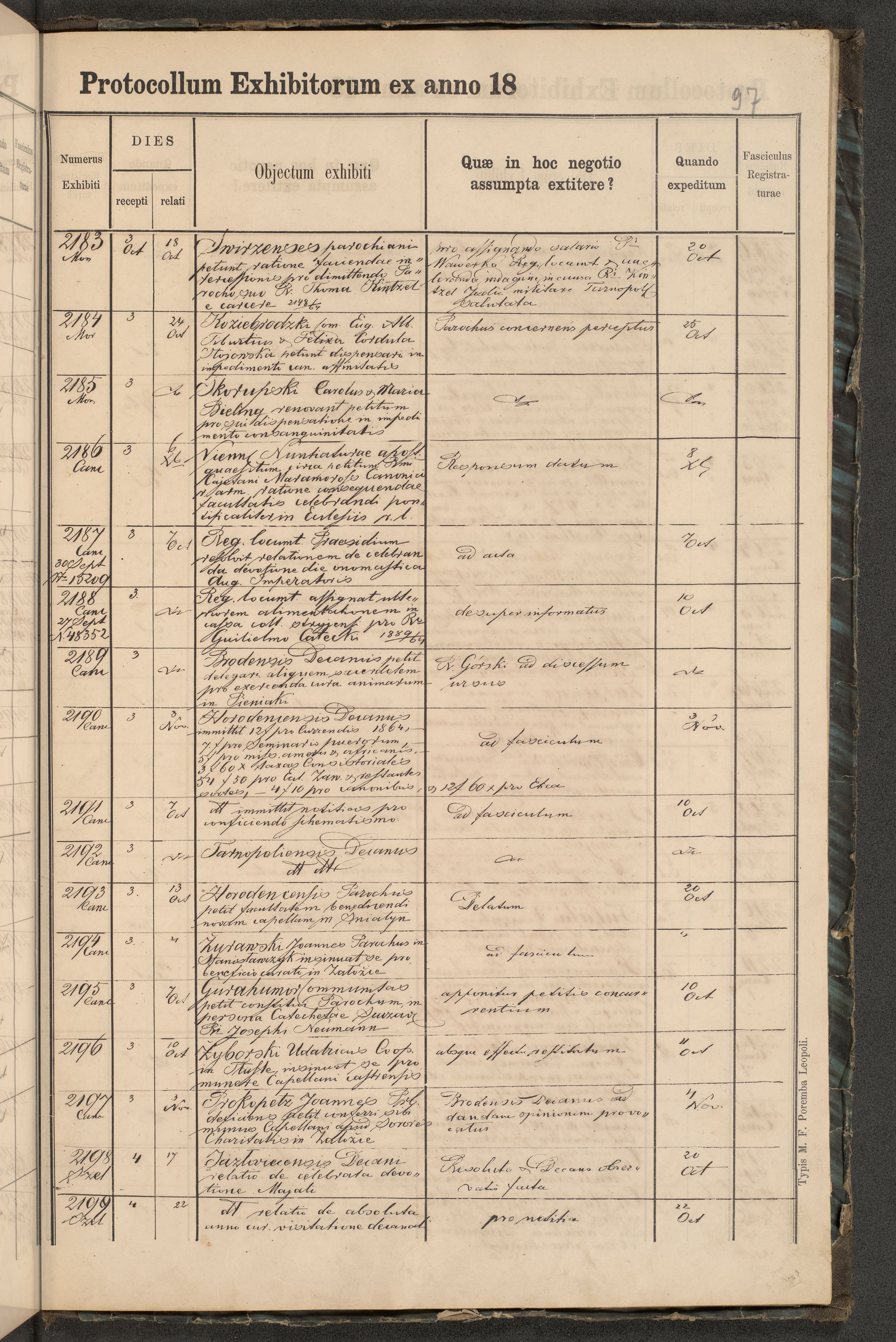 Protocollon exhibitorum in Ecclesiasticis ex anno 1864