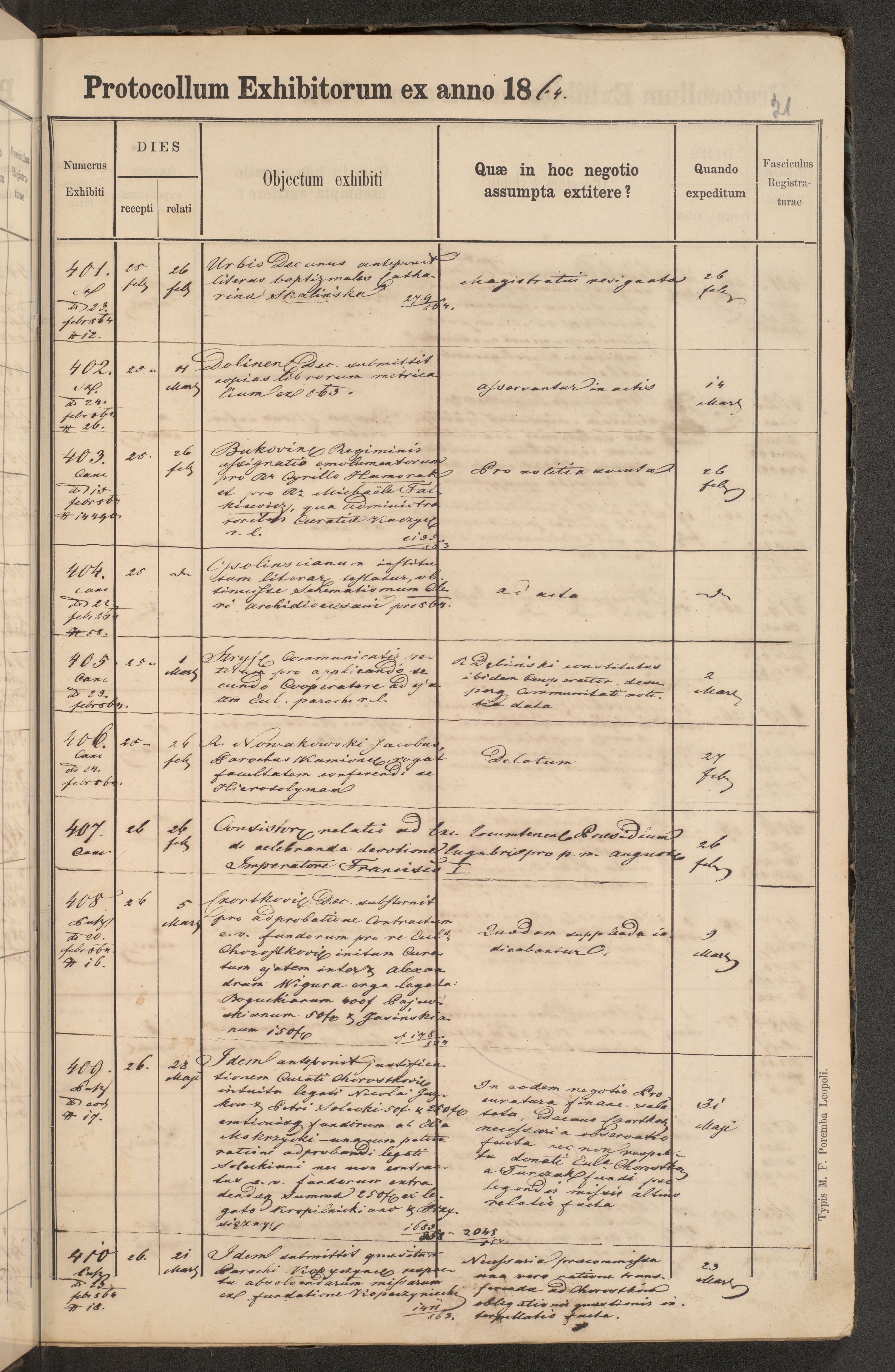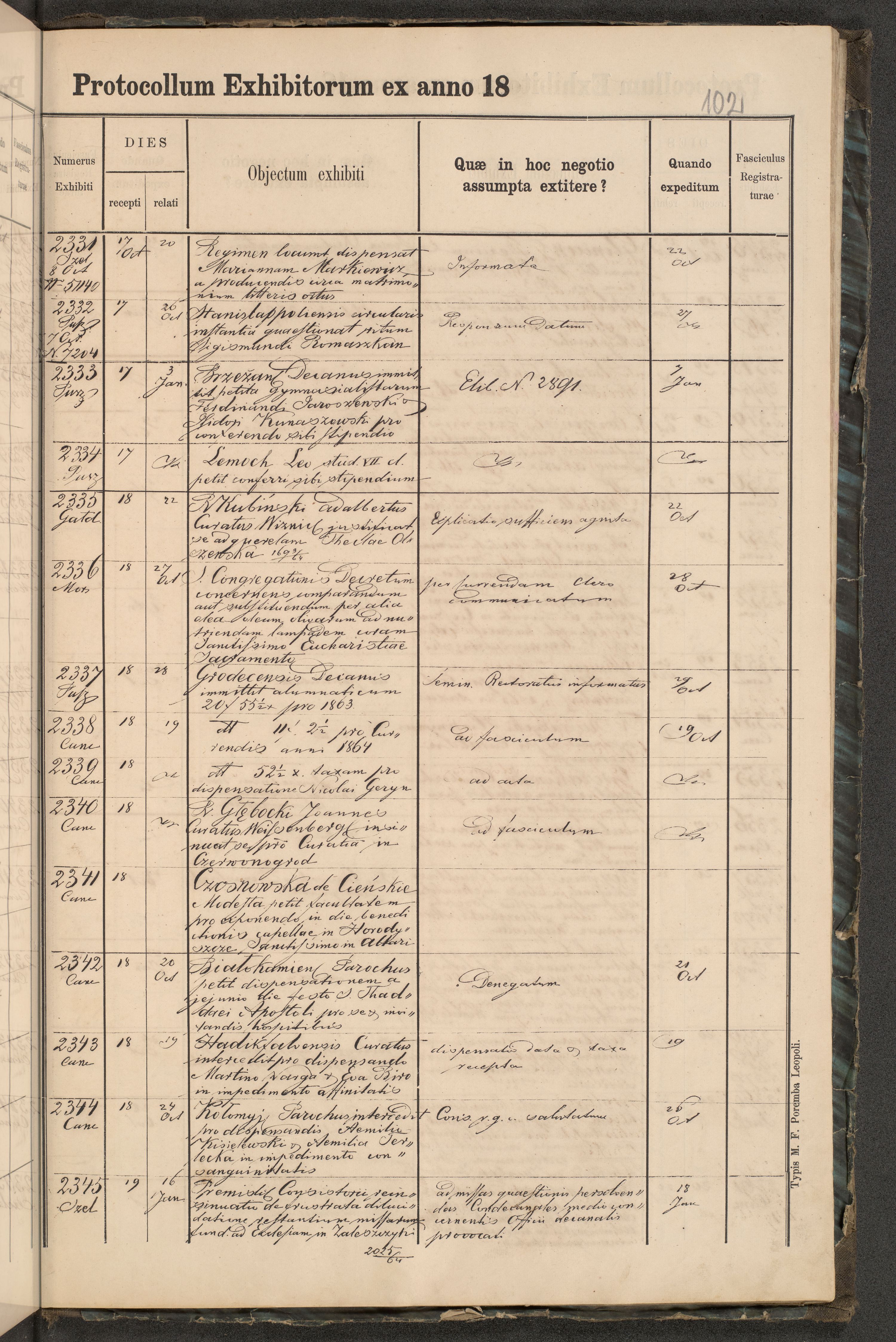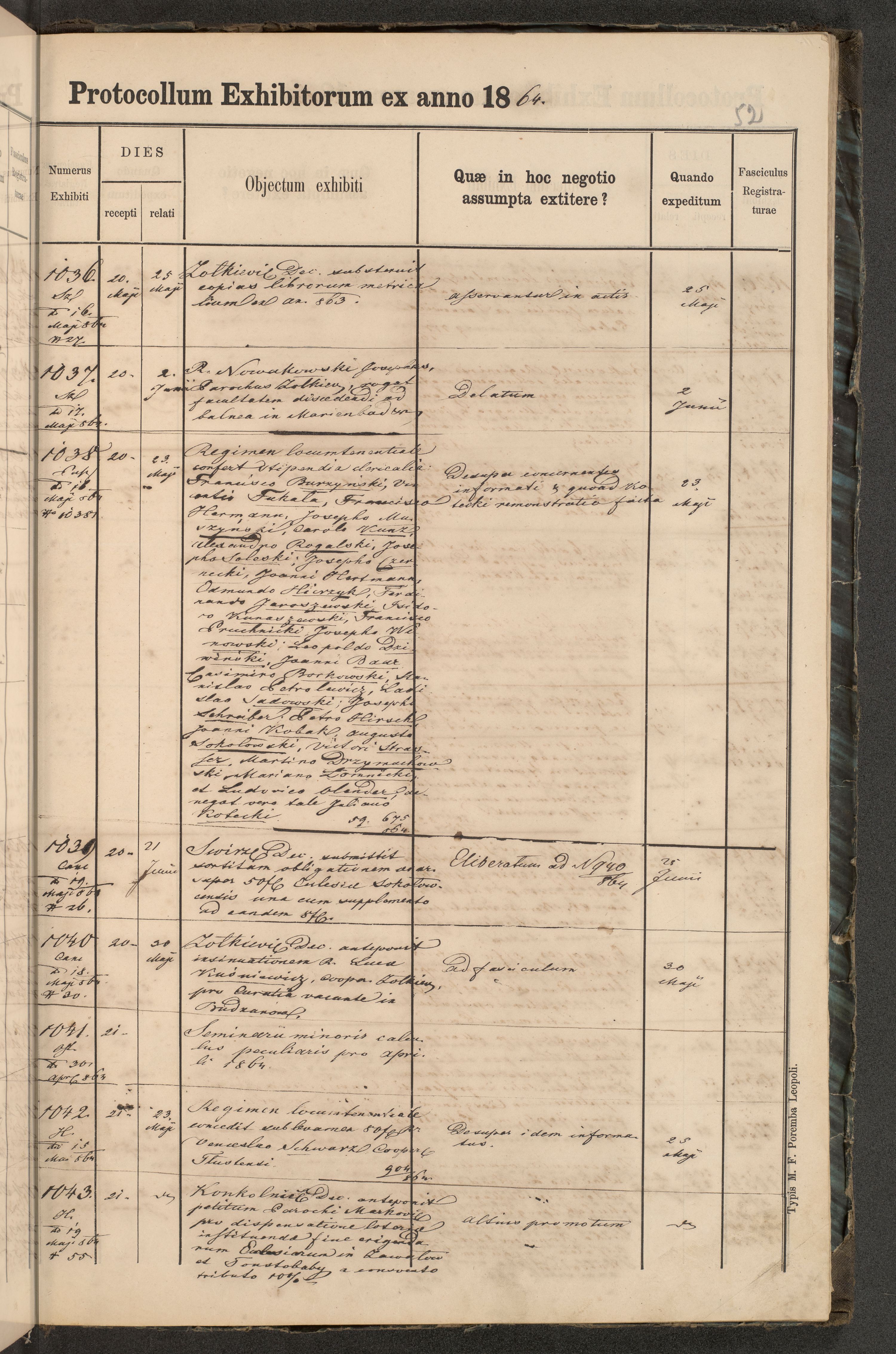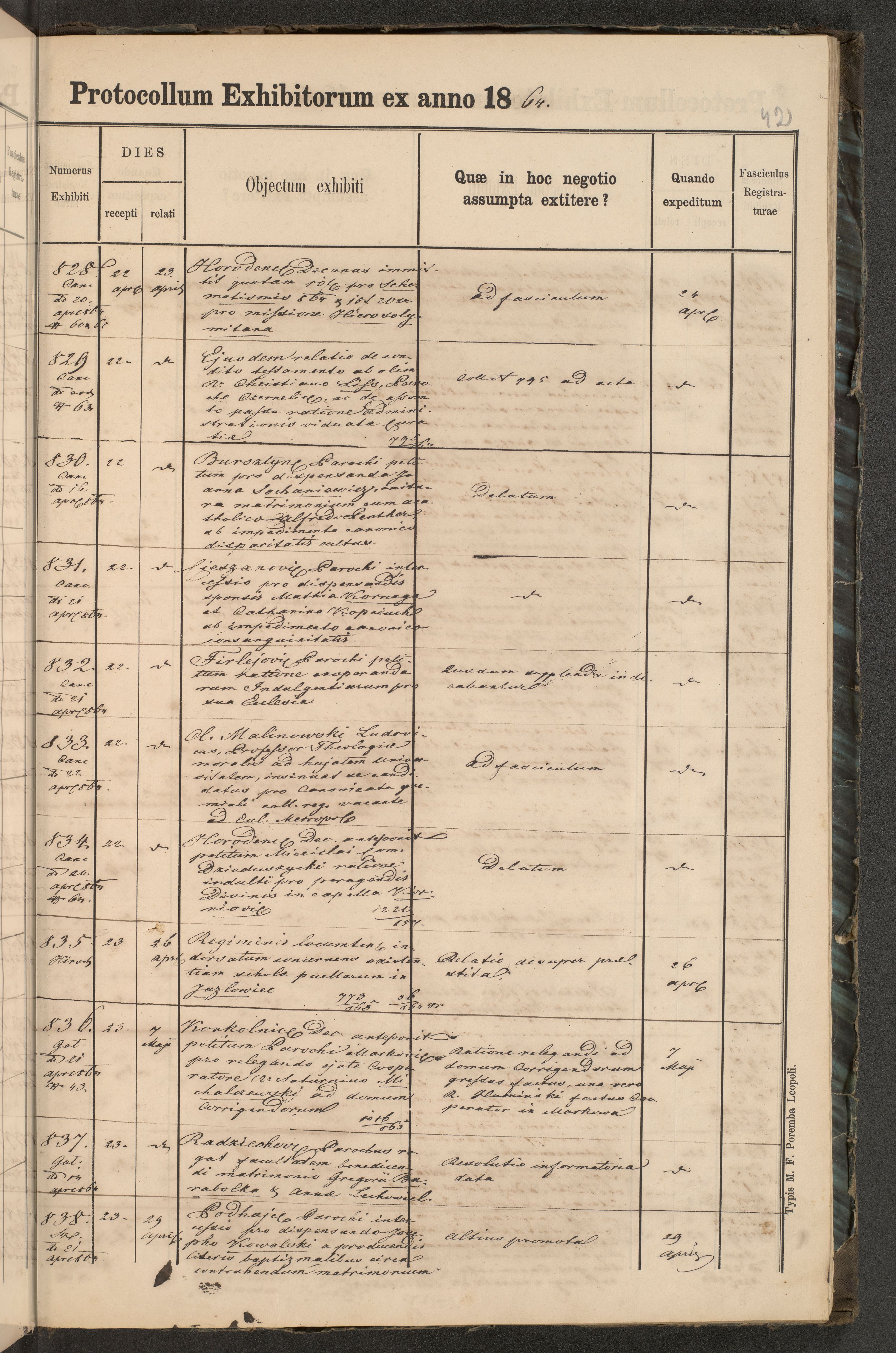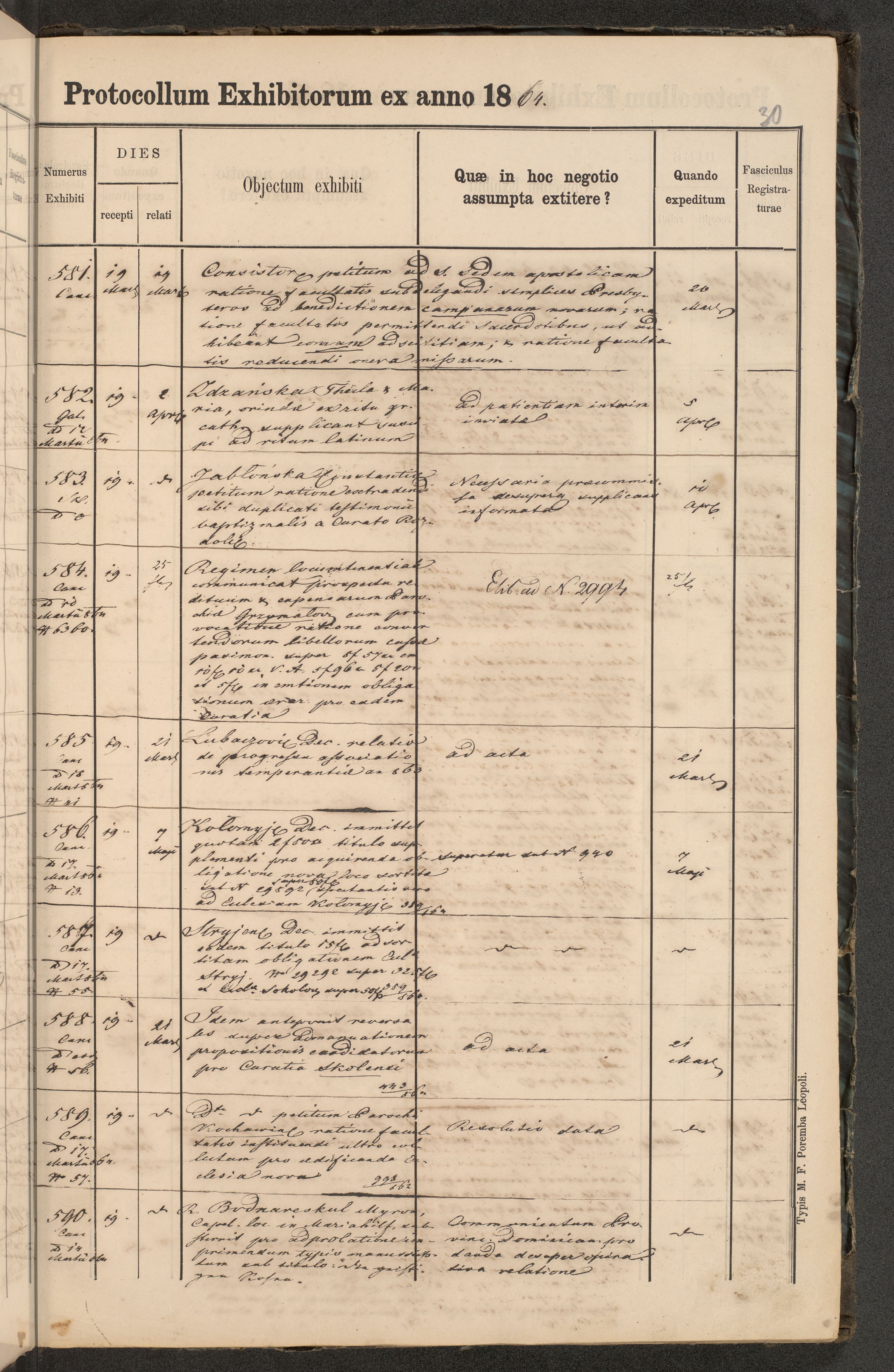 Protocollon exhibitorum in Ecclesiasticis ex anno 1864