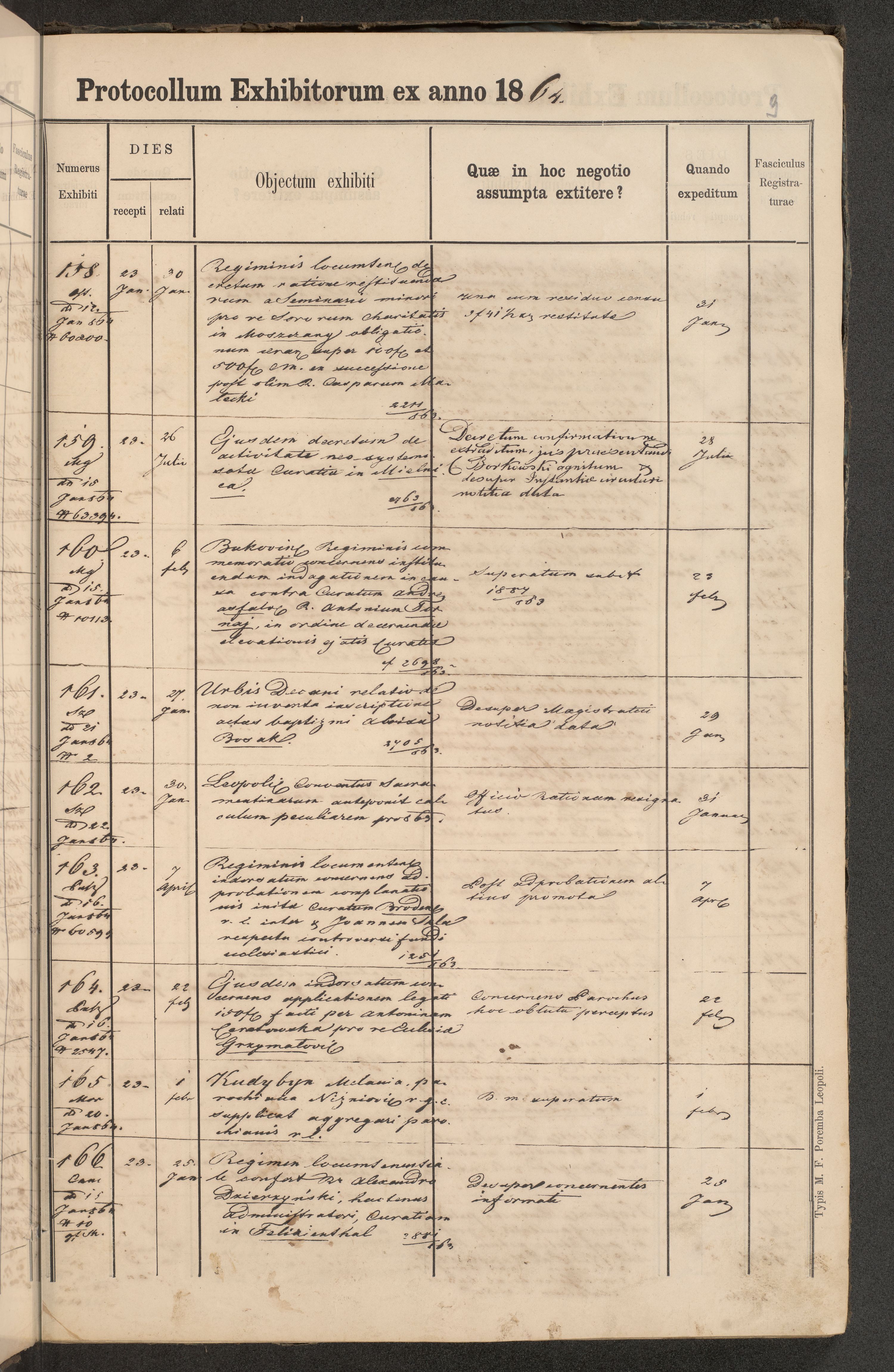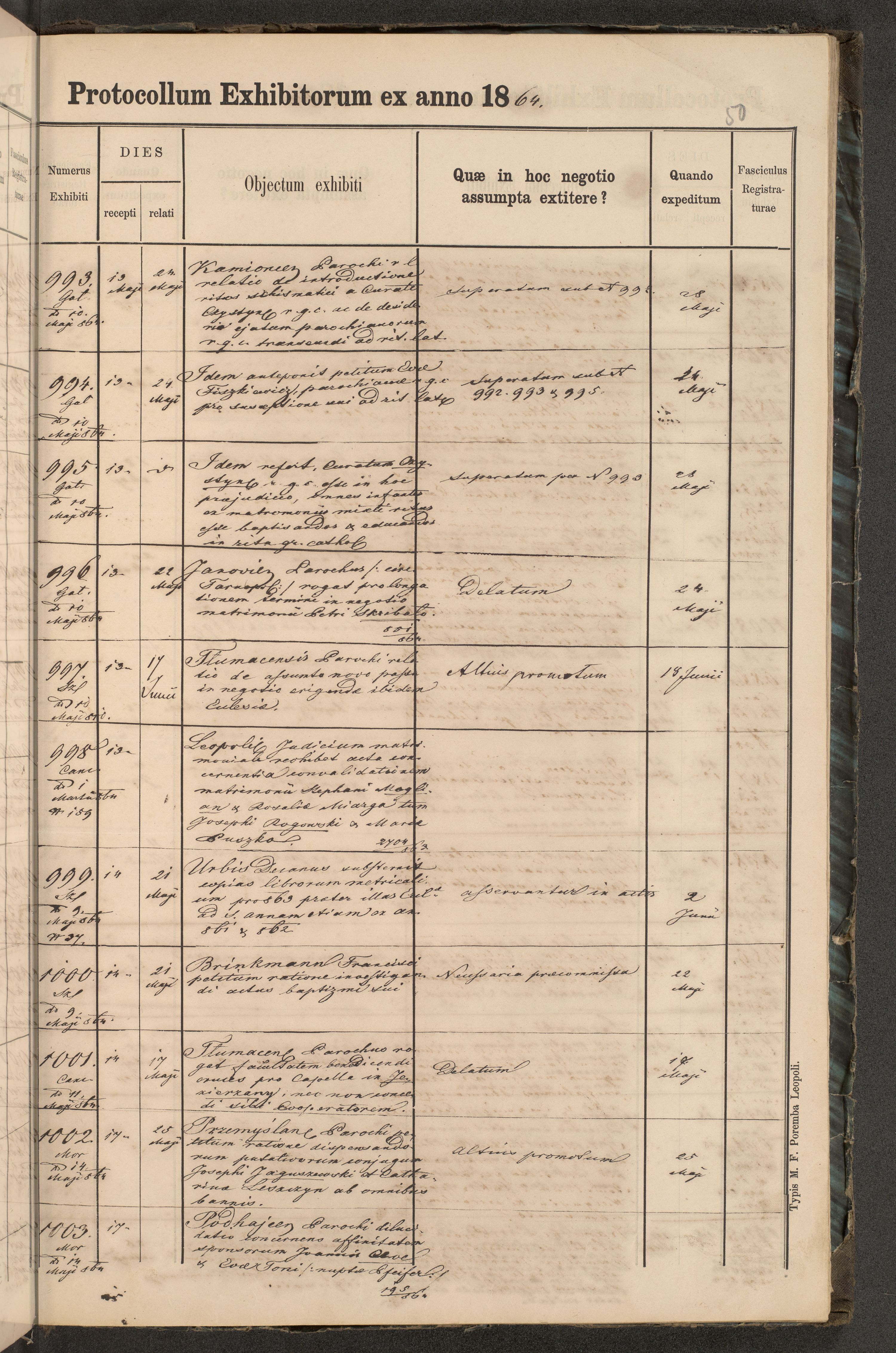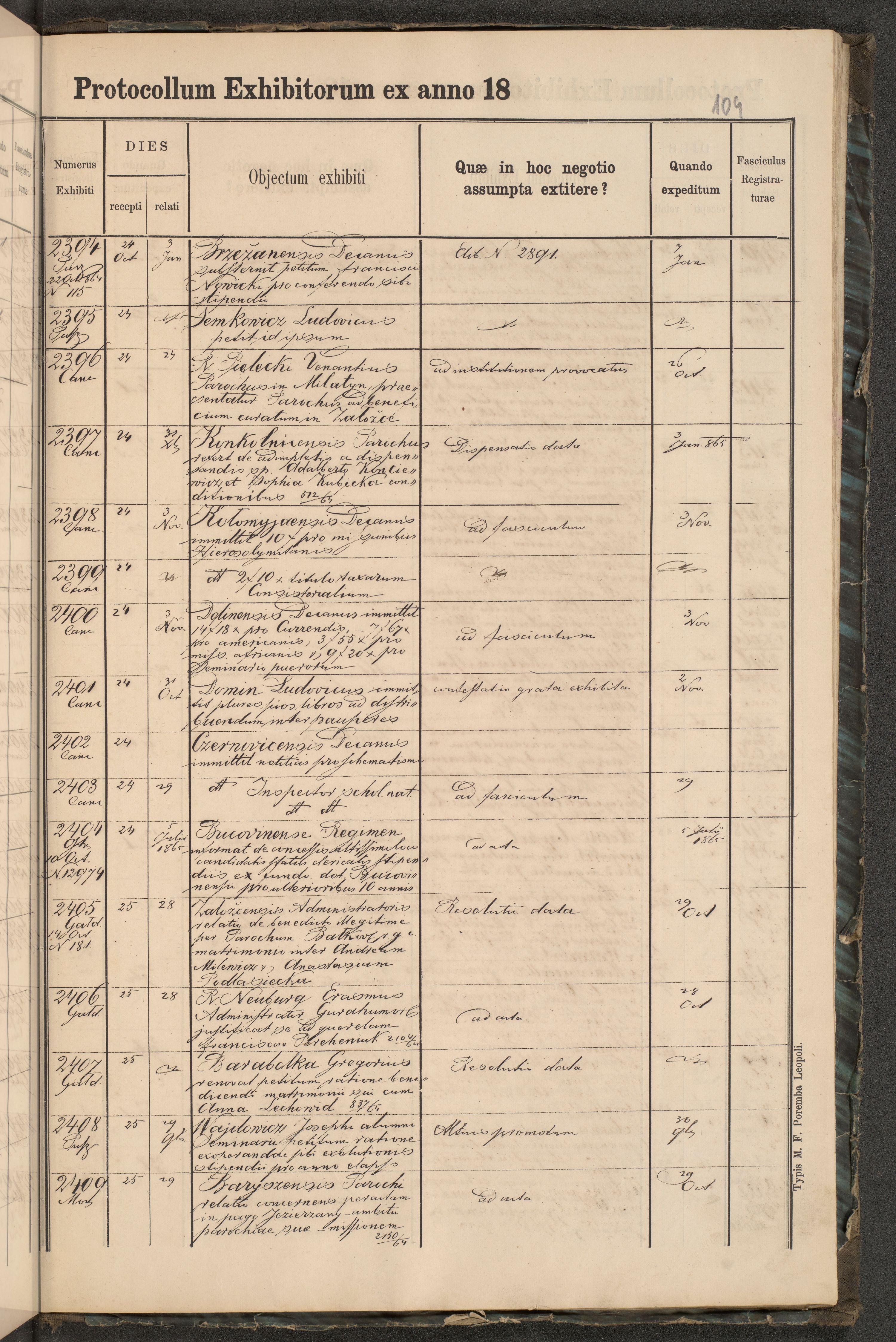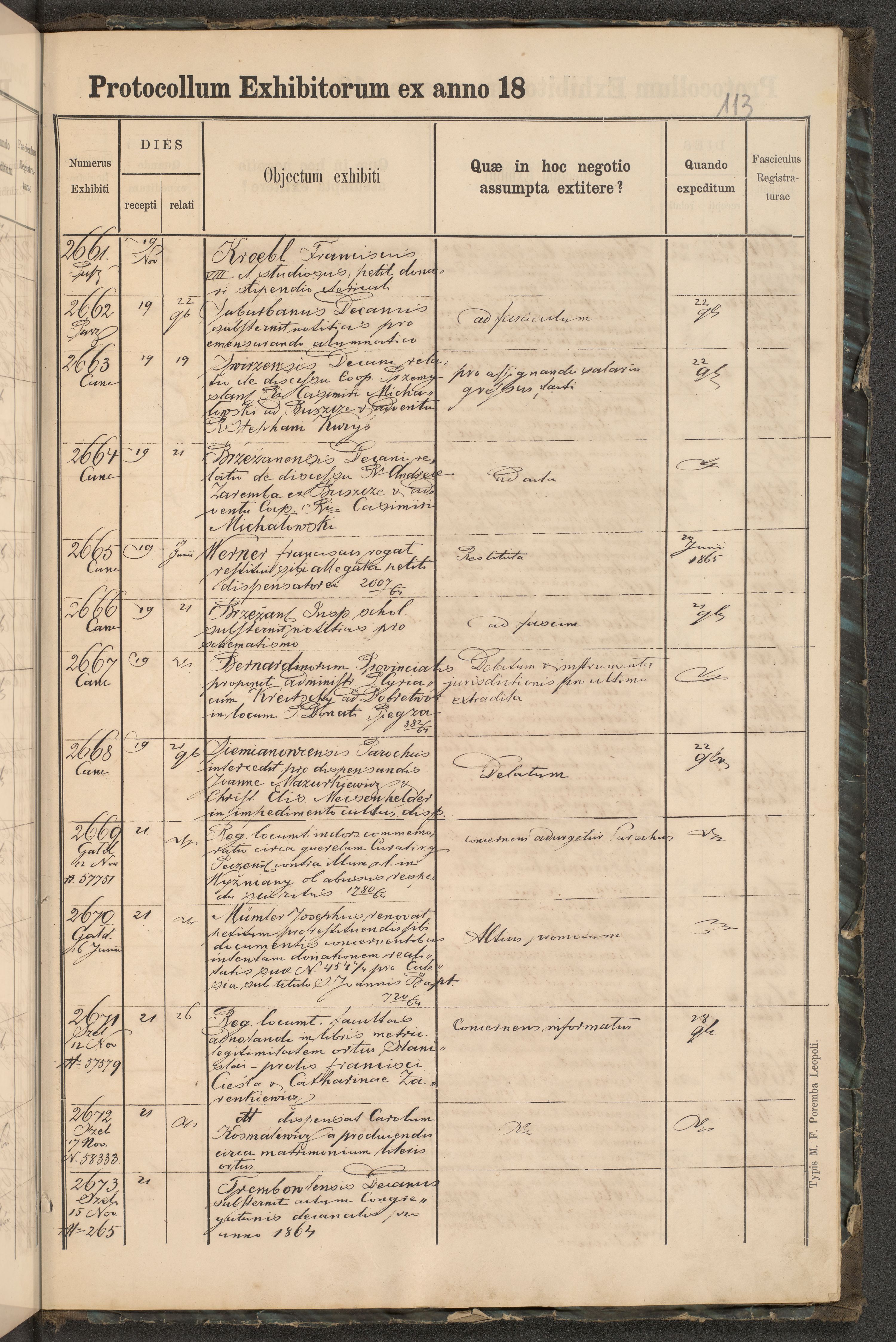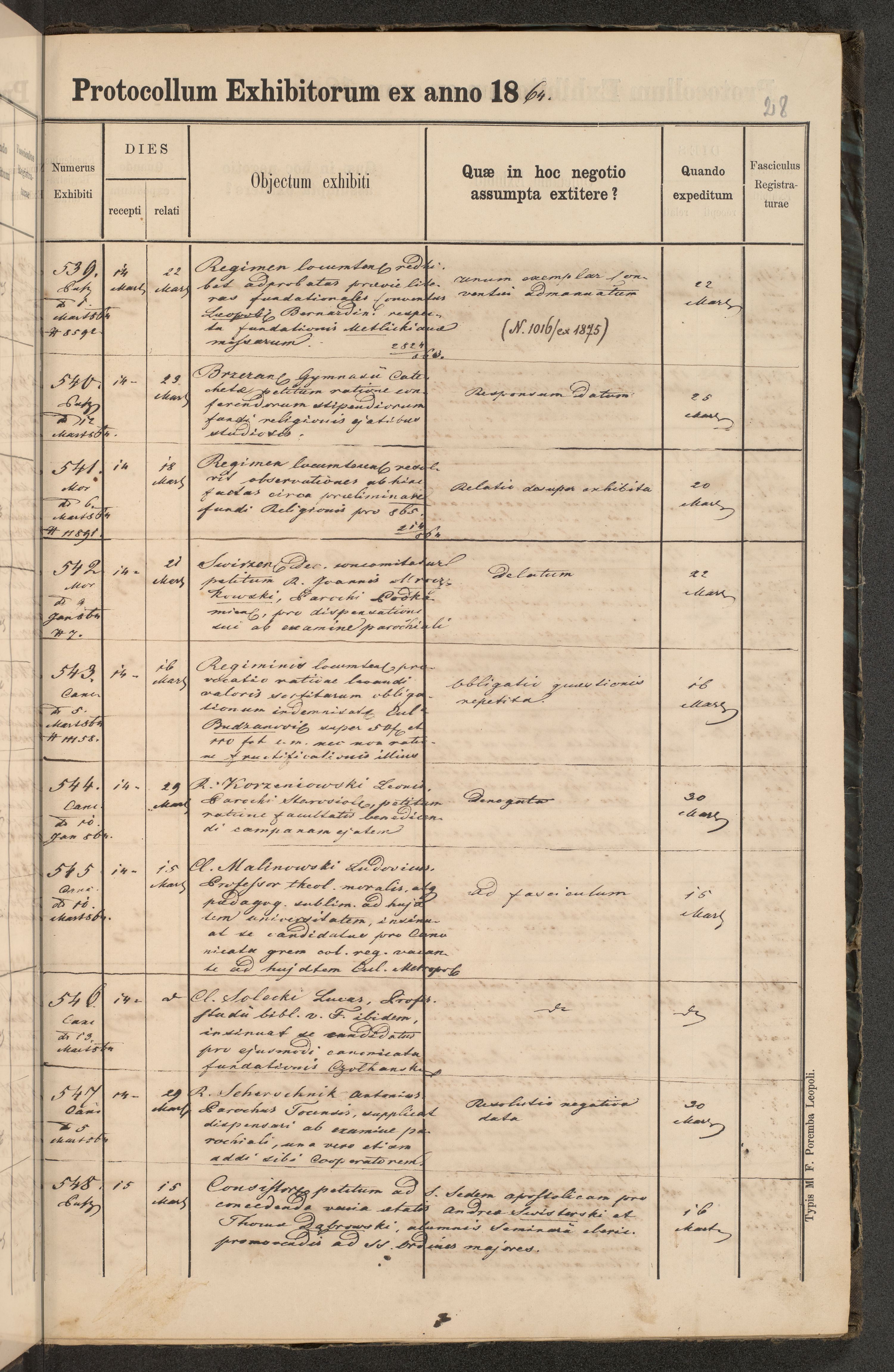 Protocollon exhibitorum in Ecclesiasticis ex anno 1864