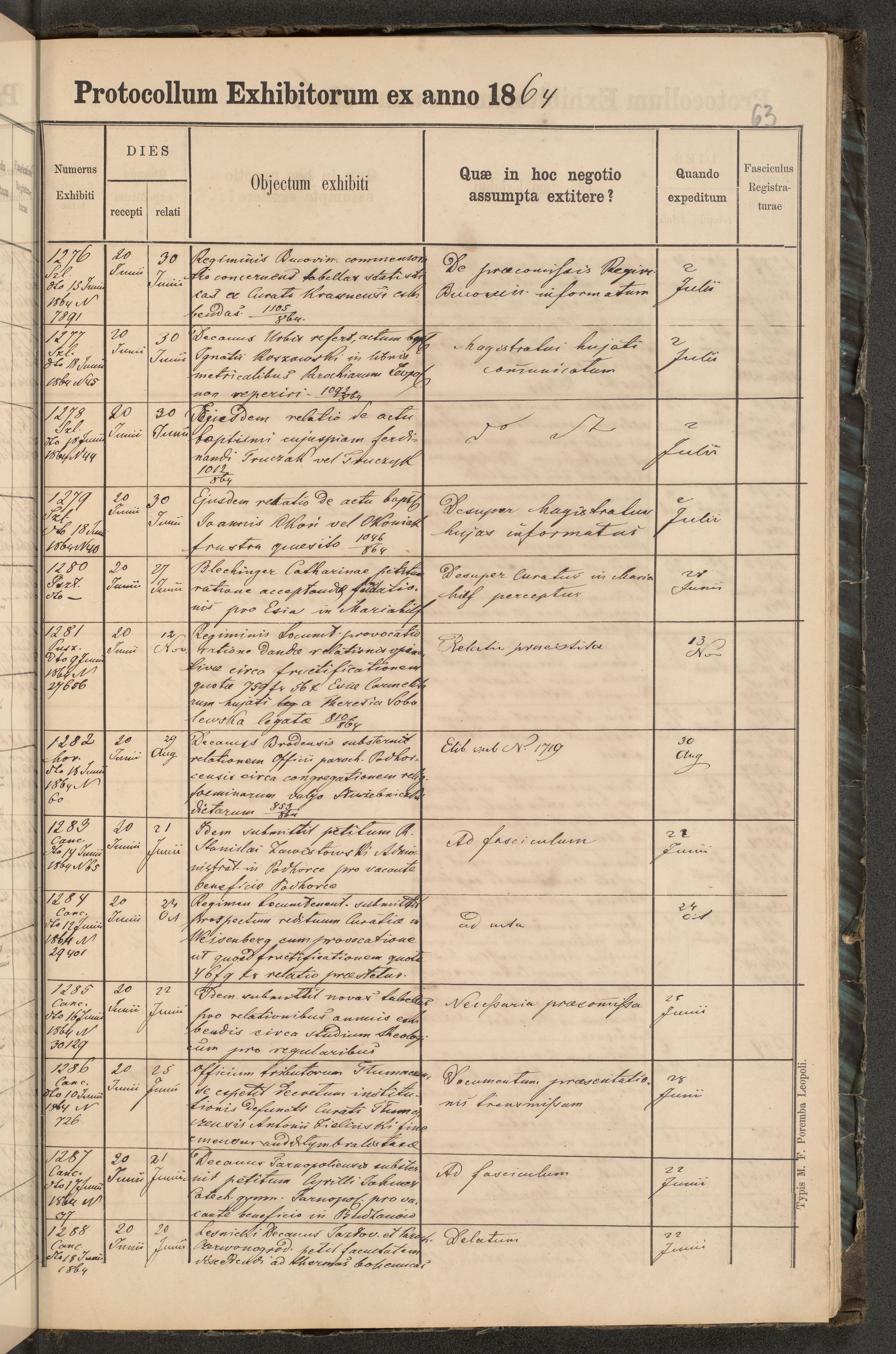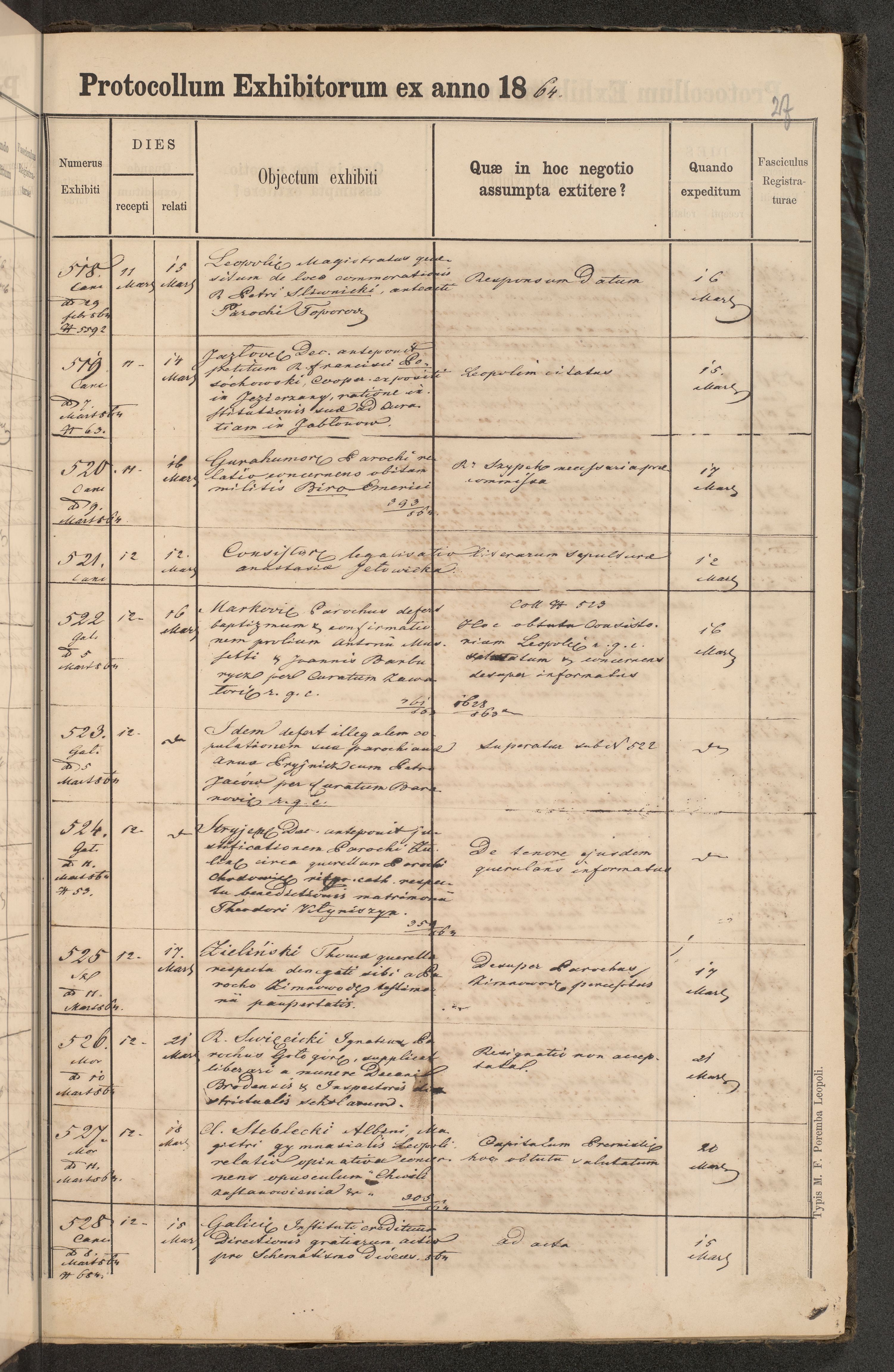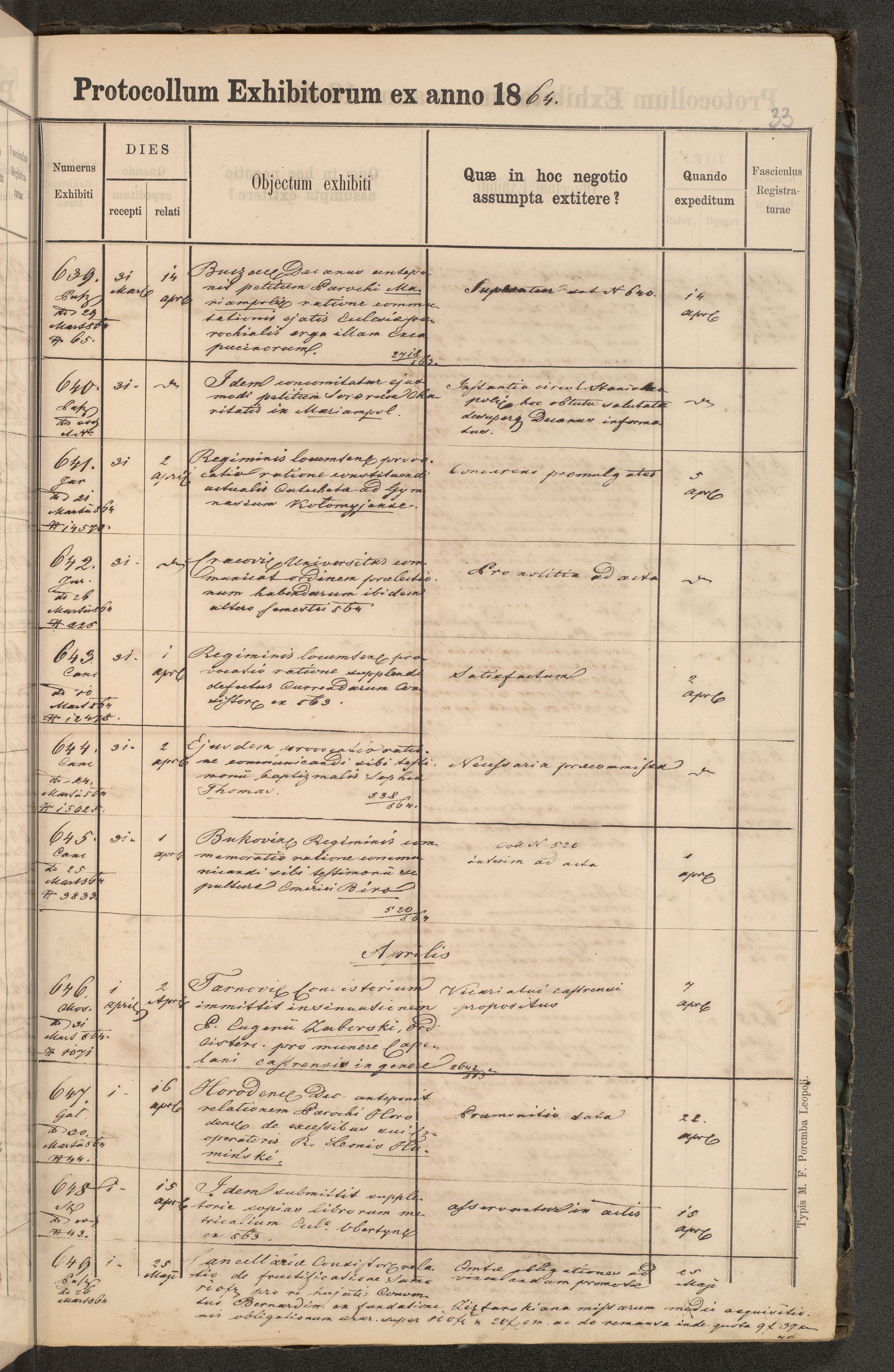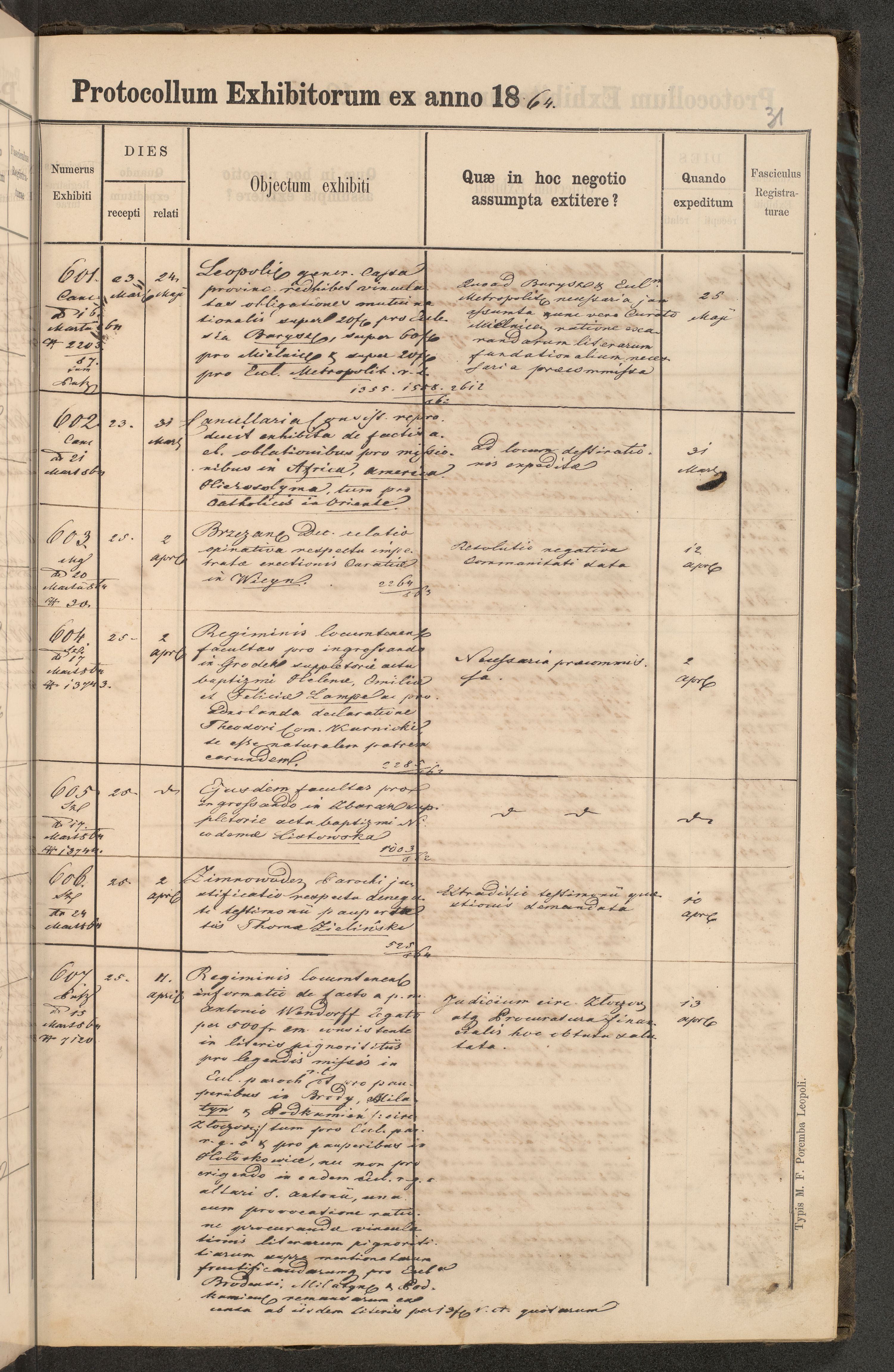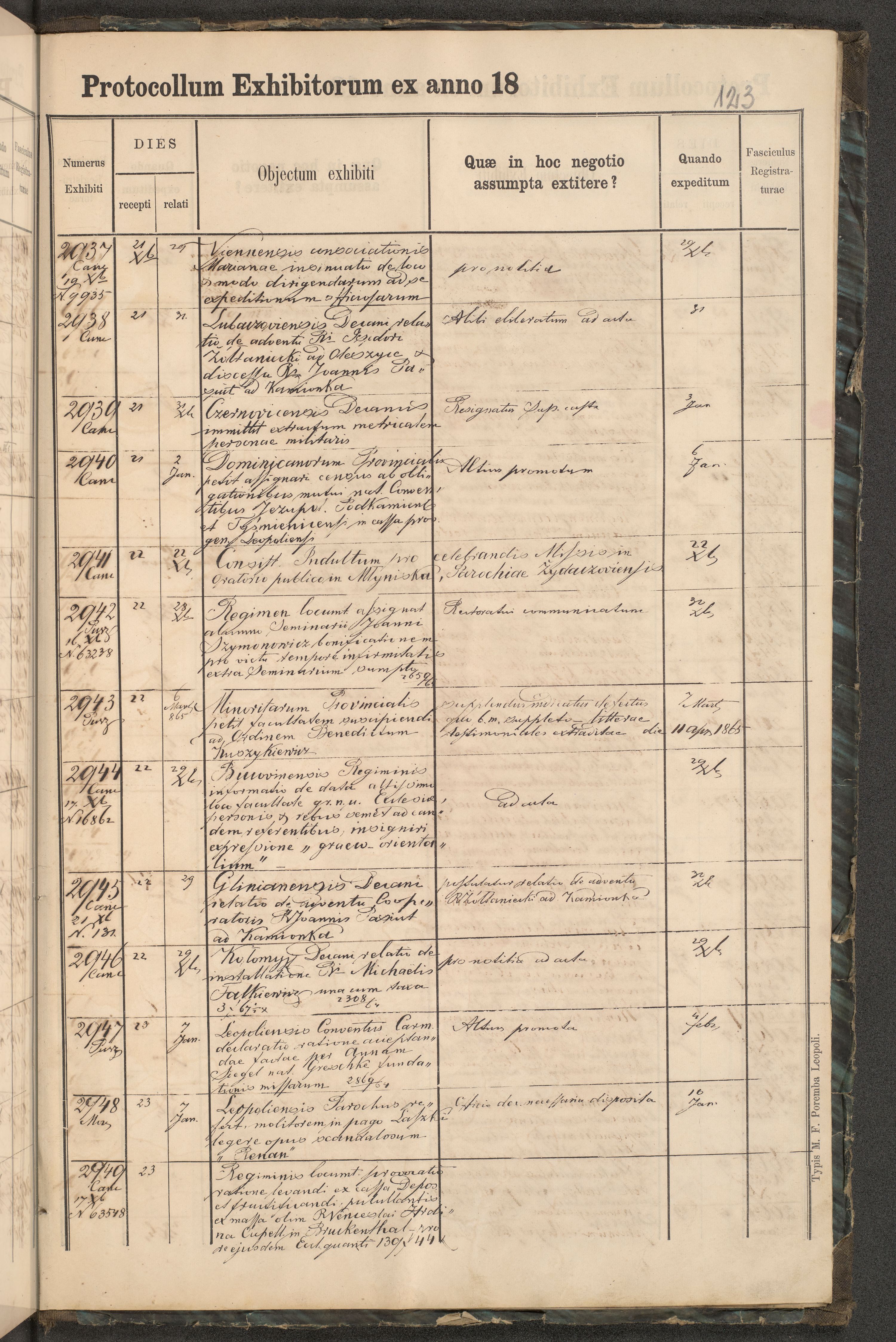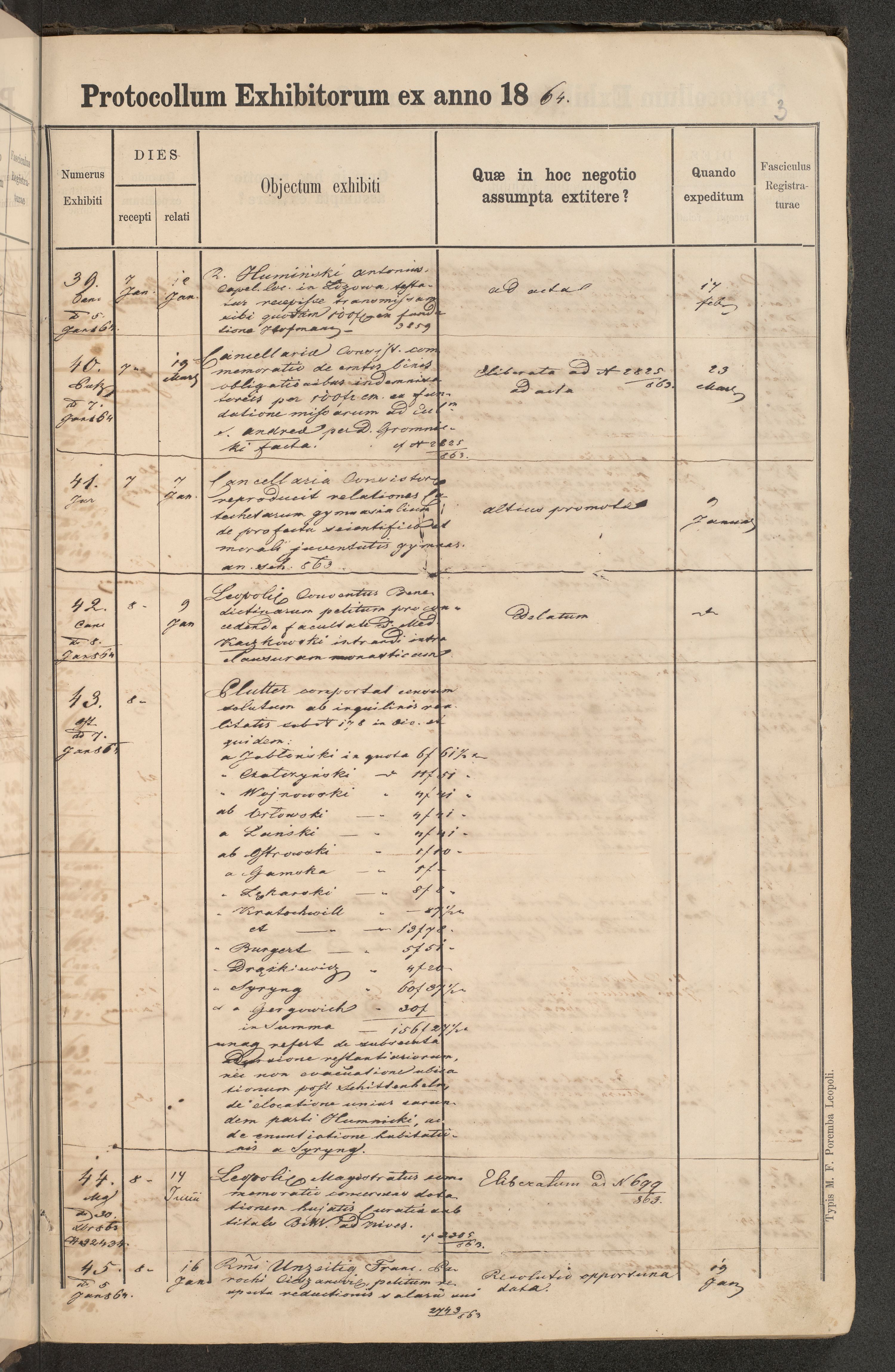Protocollon exhibitorum in Ecclesiasticis ex anno 1864