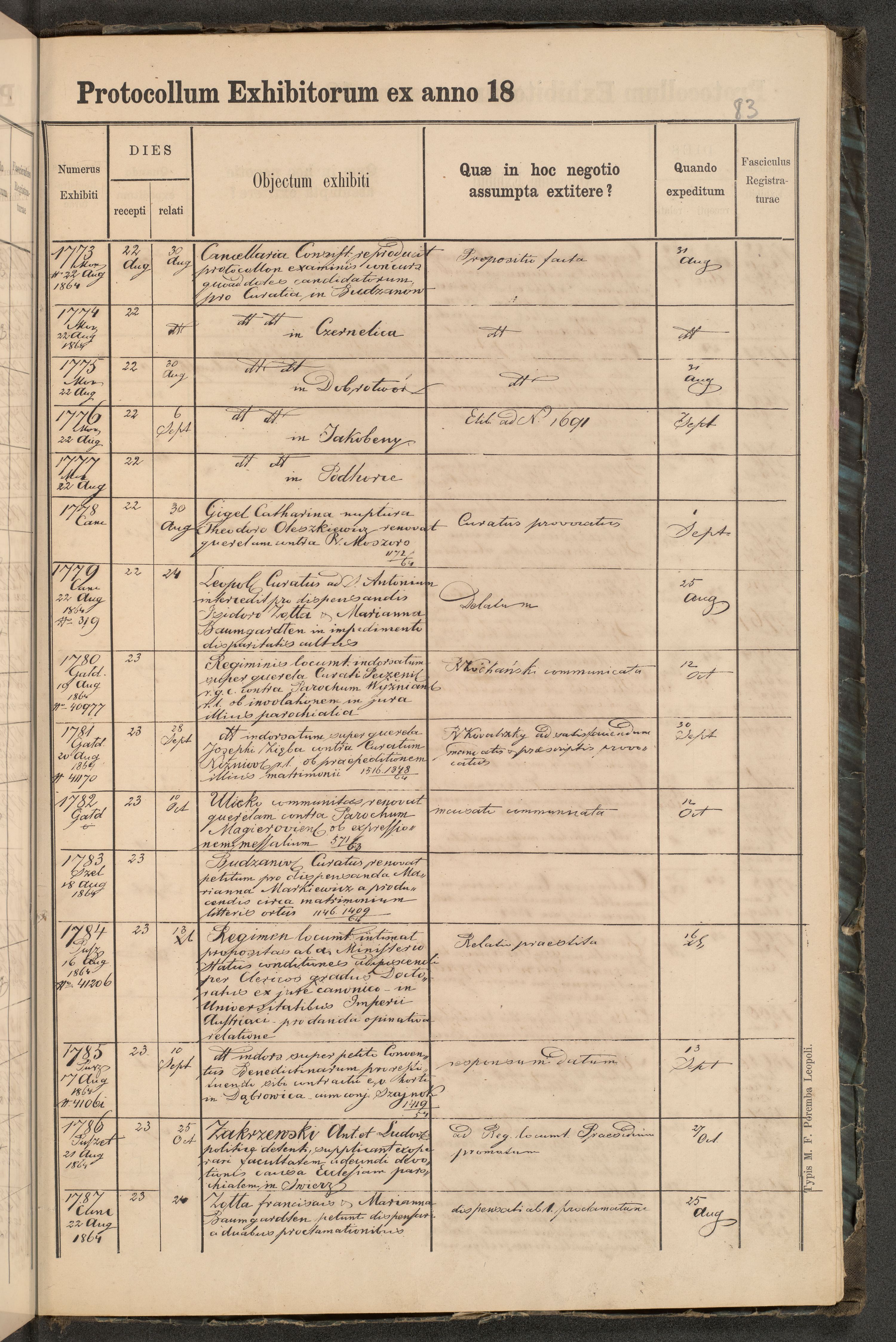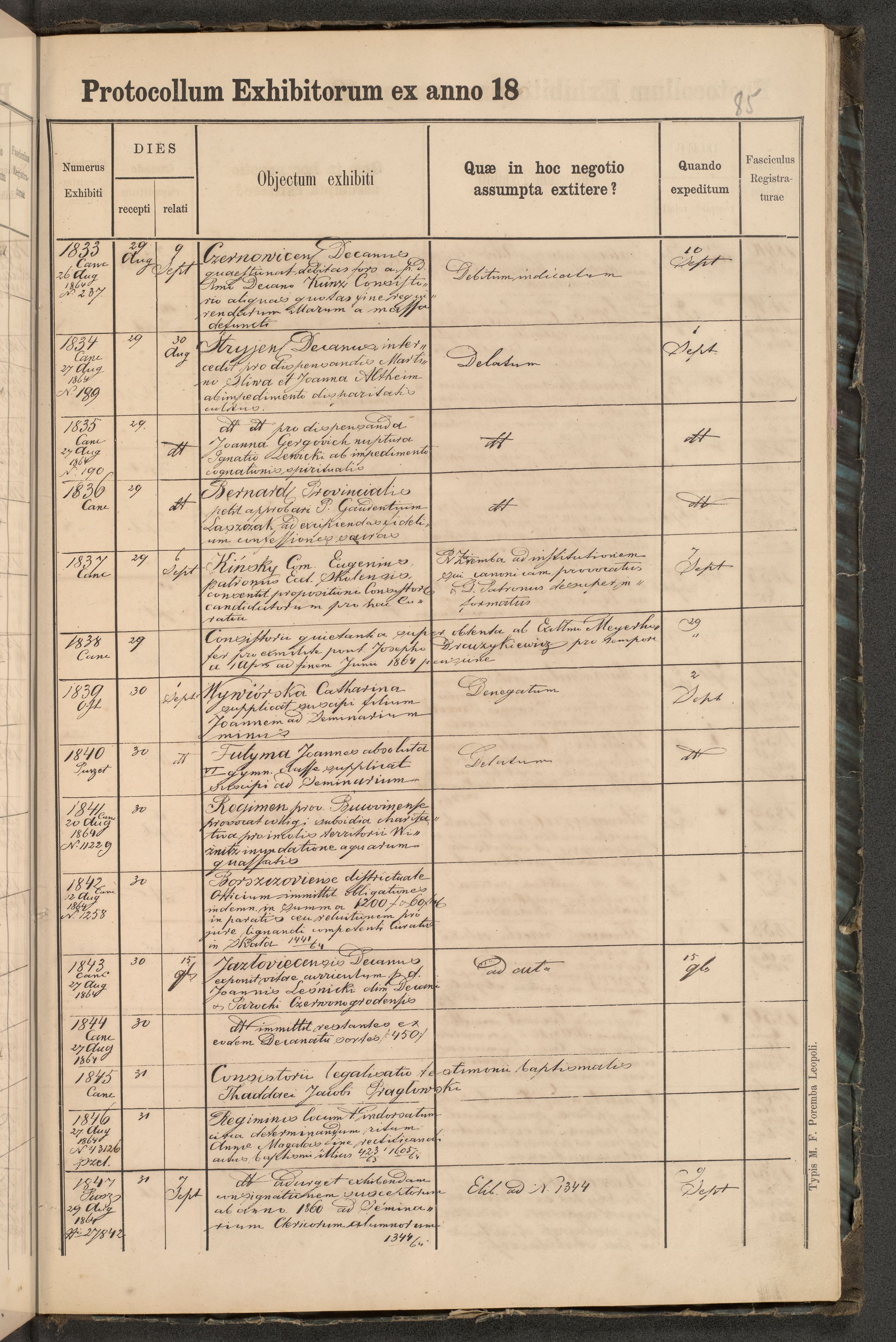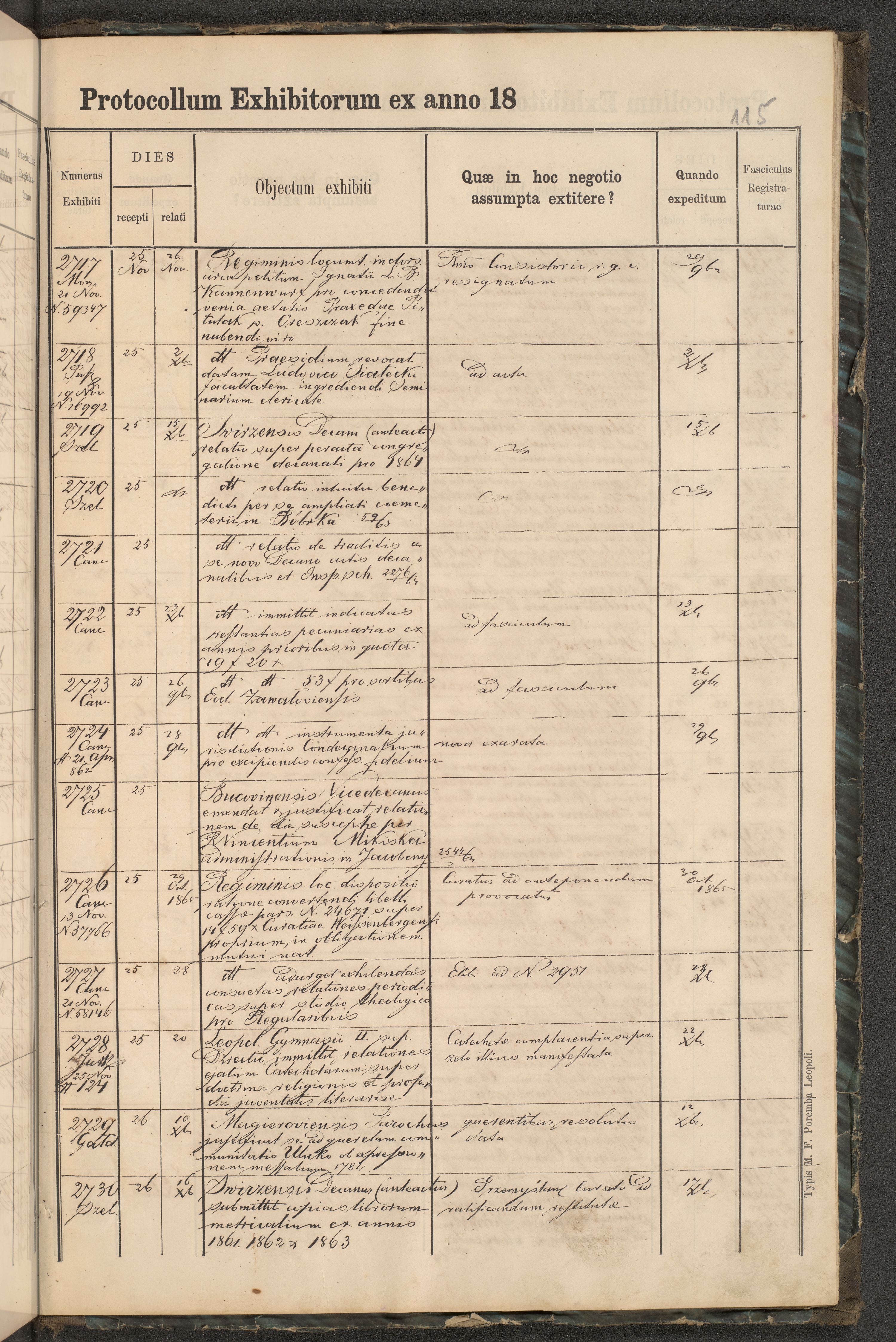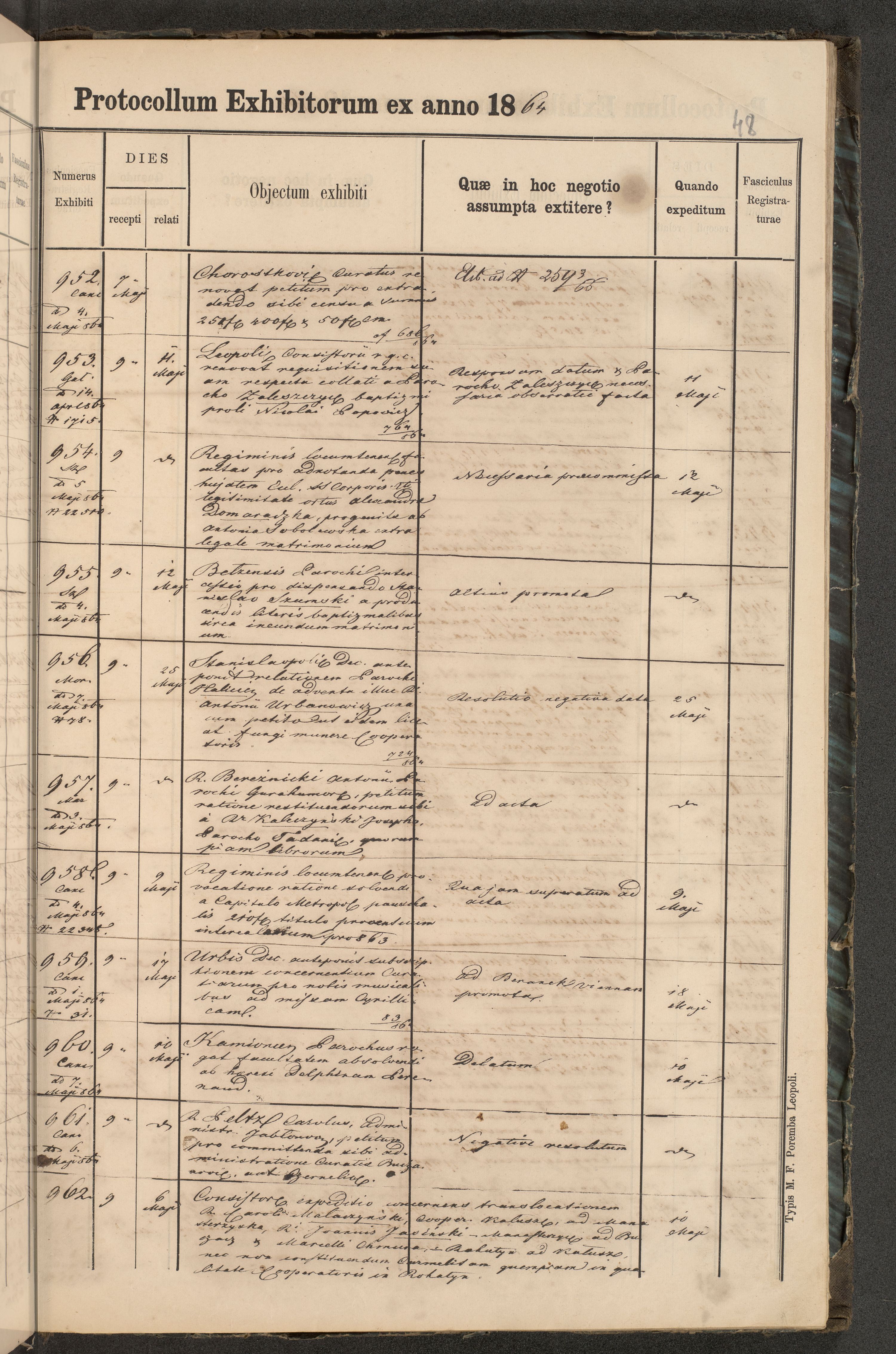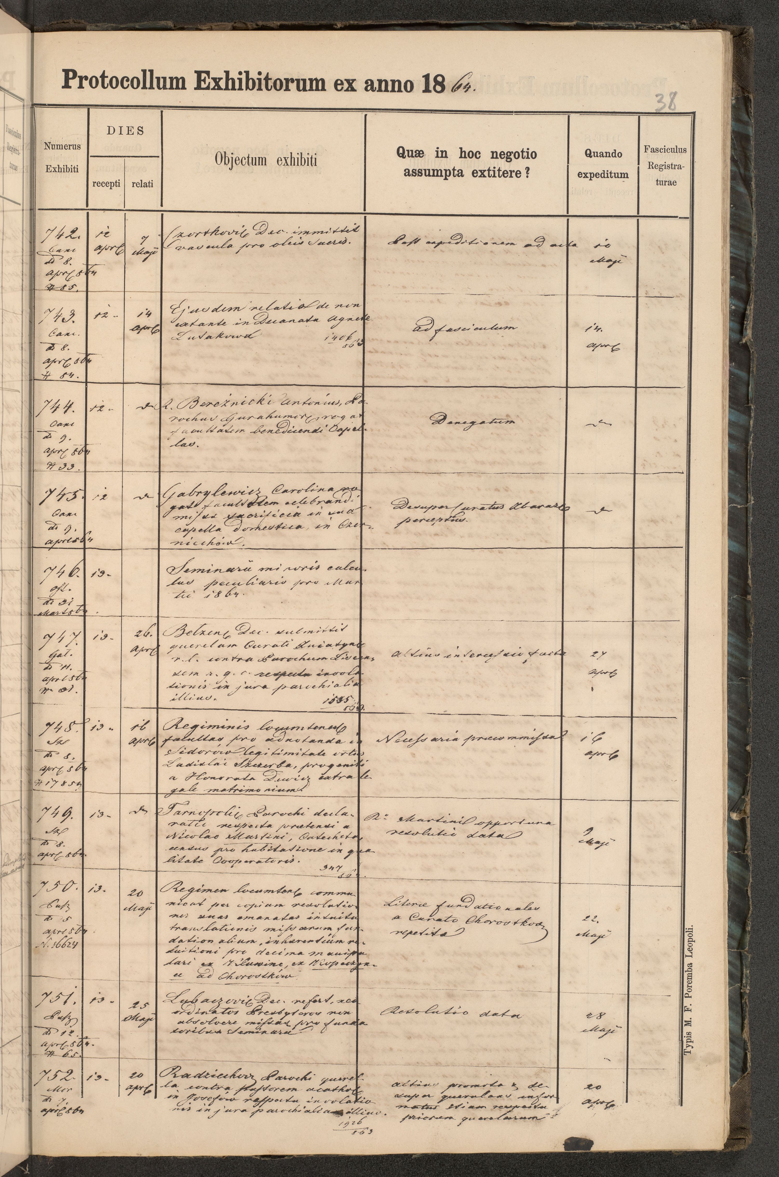 Protocollon exhibitorum in Ecclesiasticis ex anno 1864