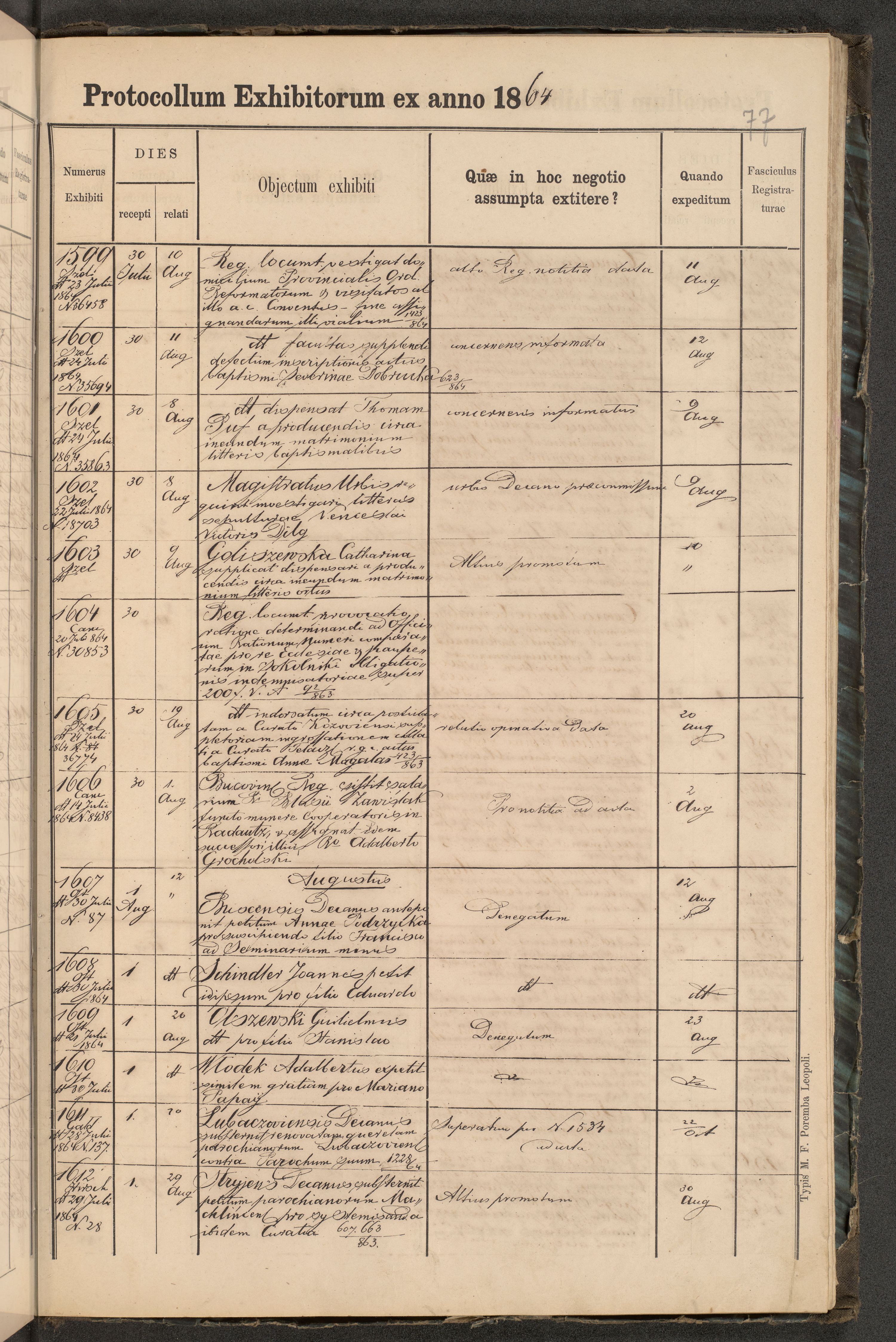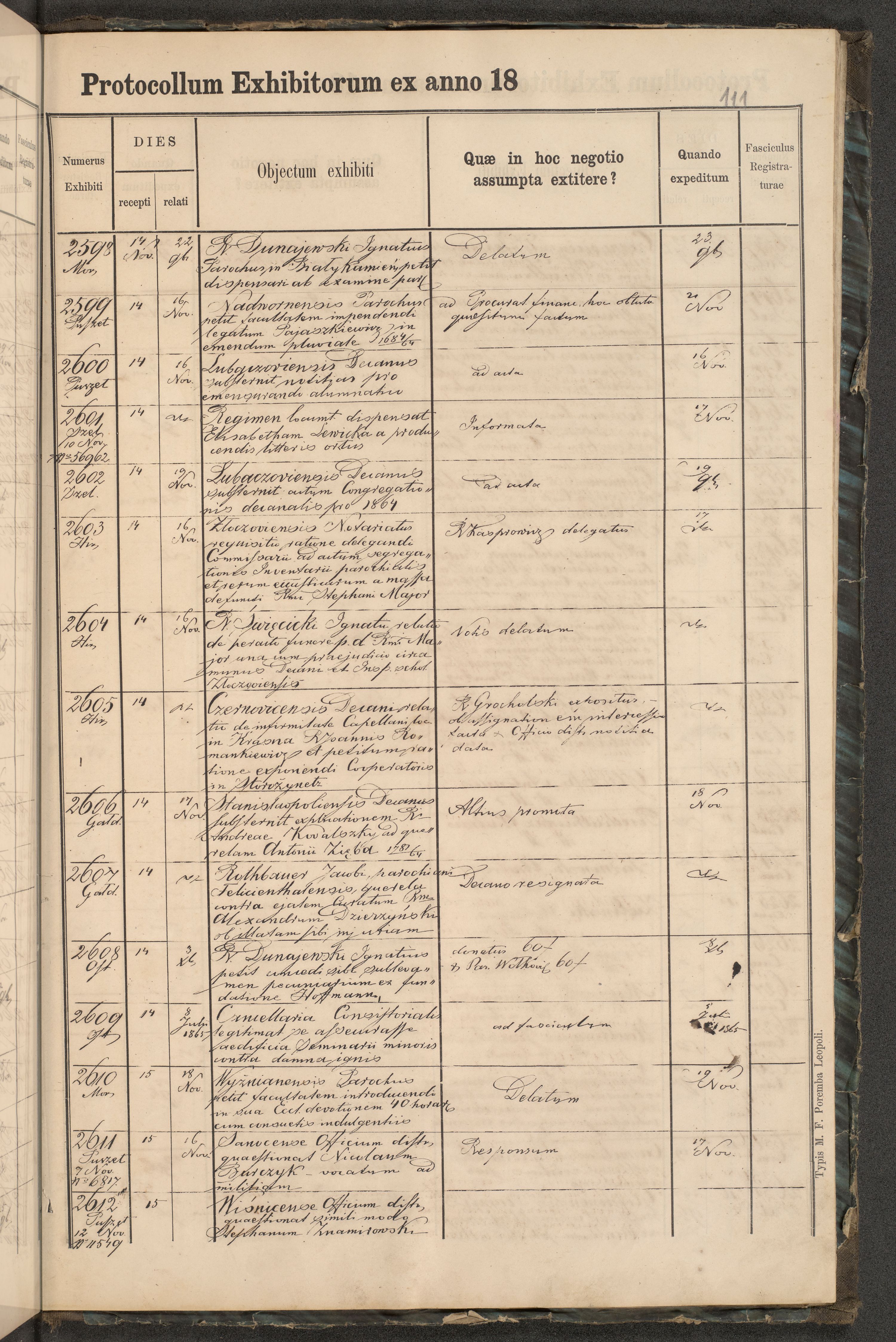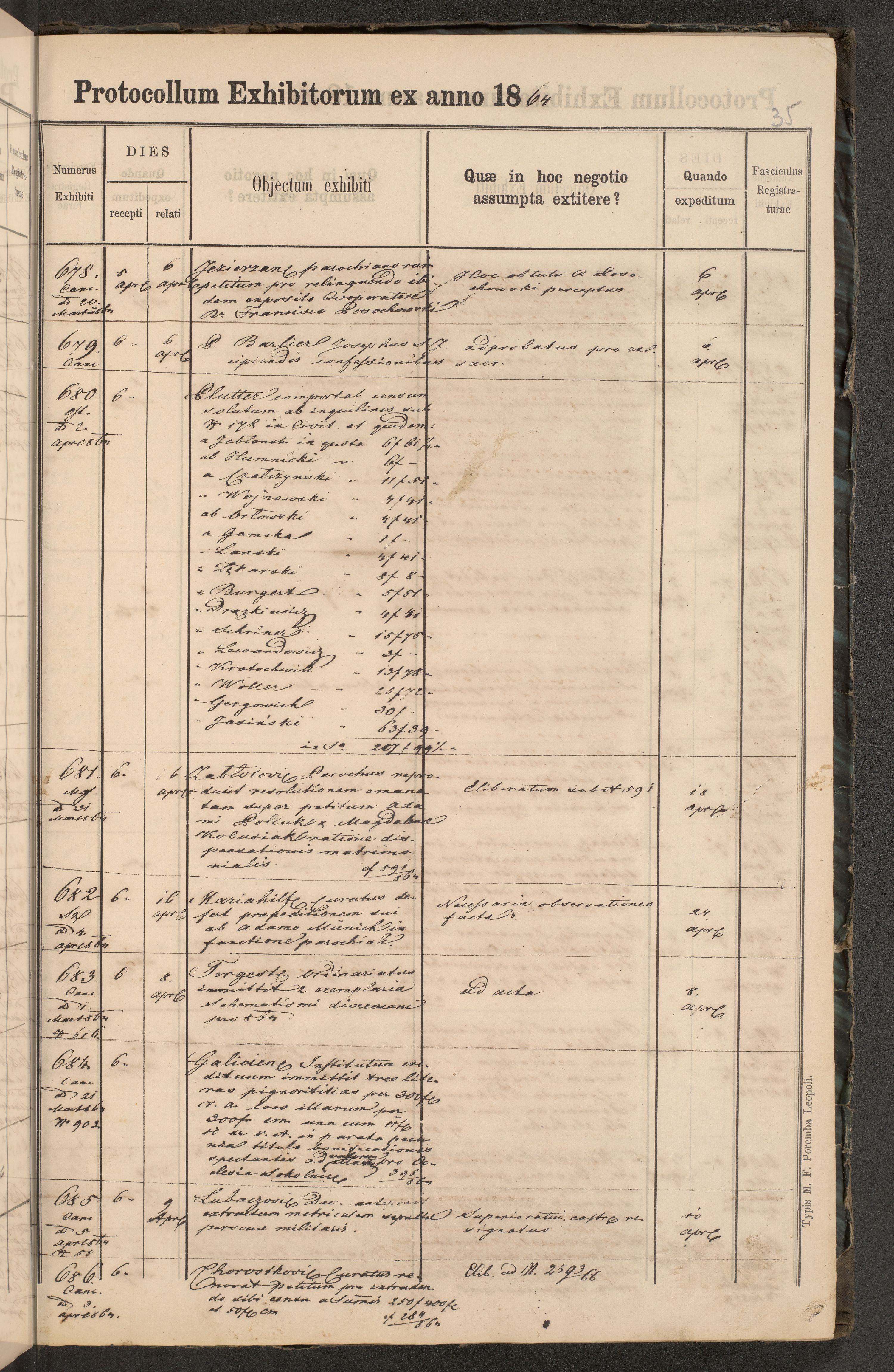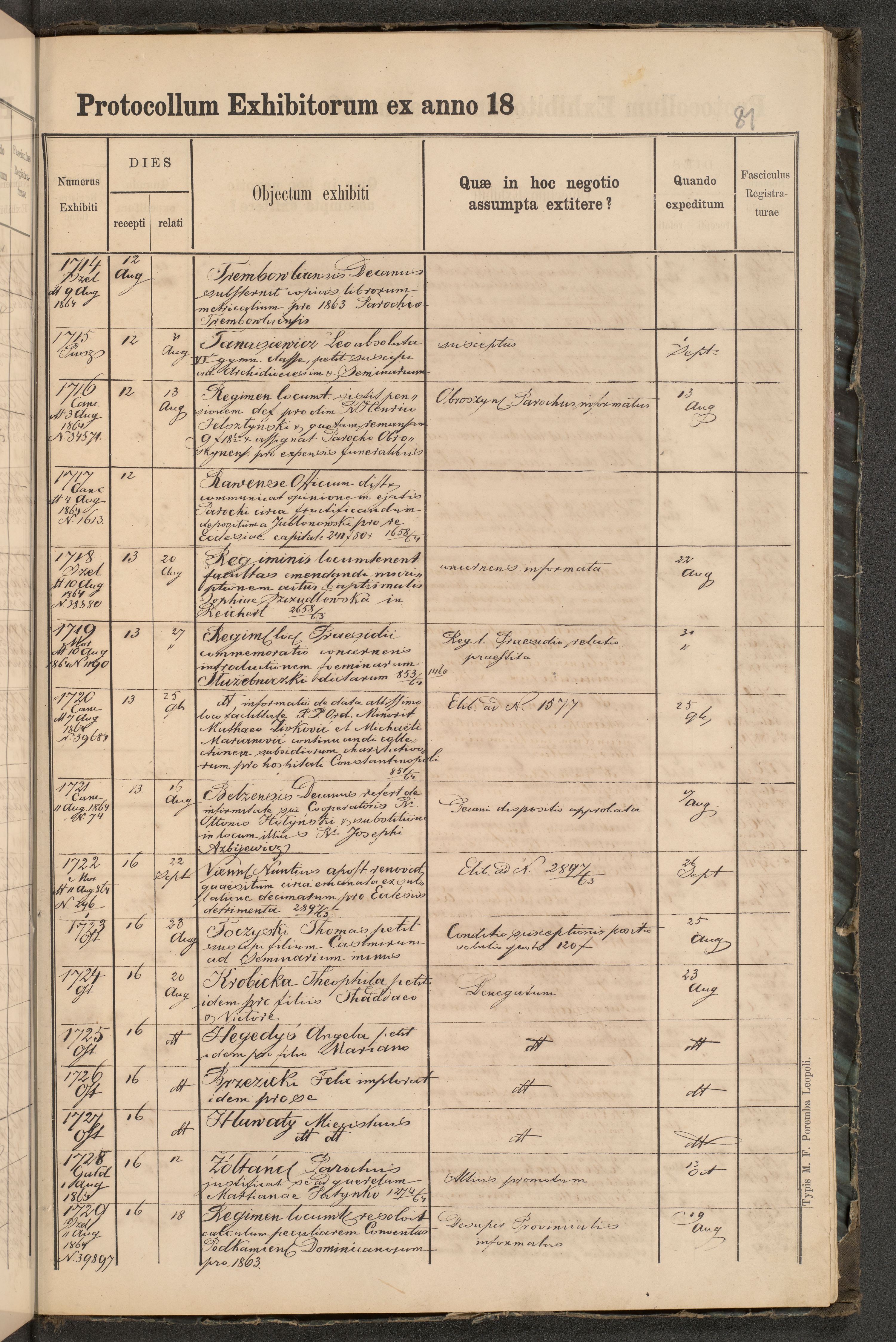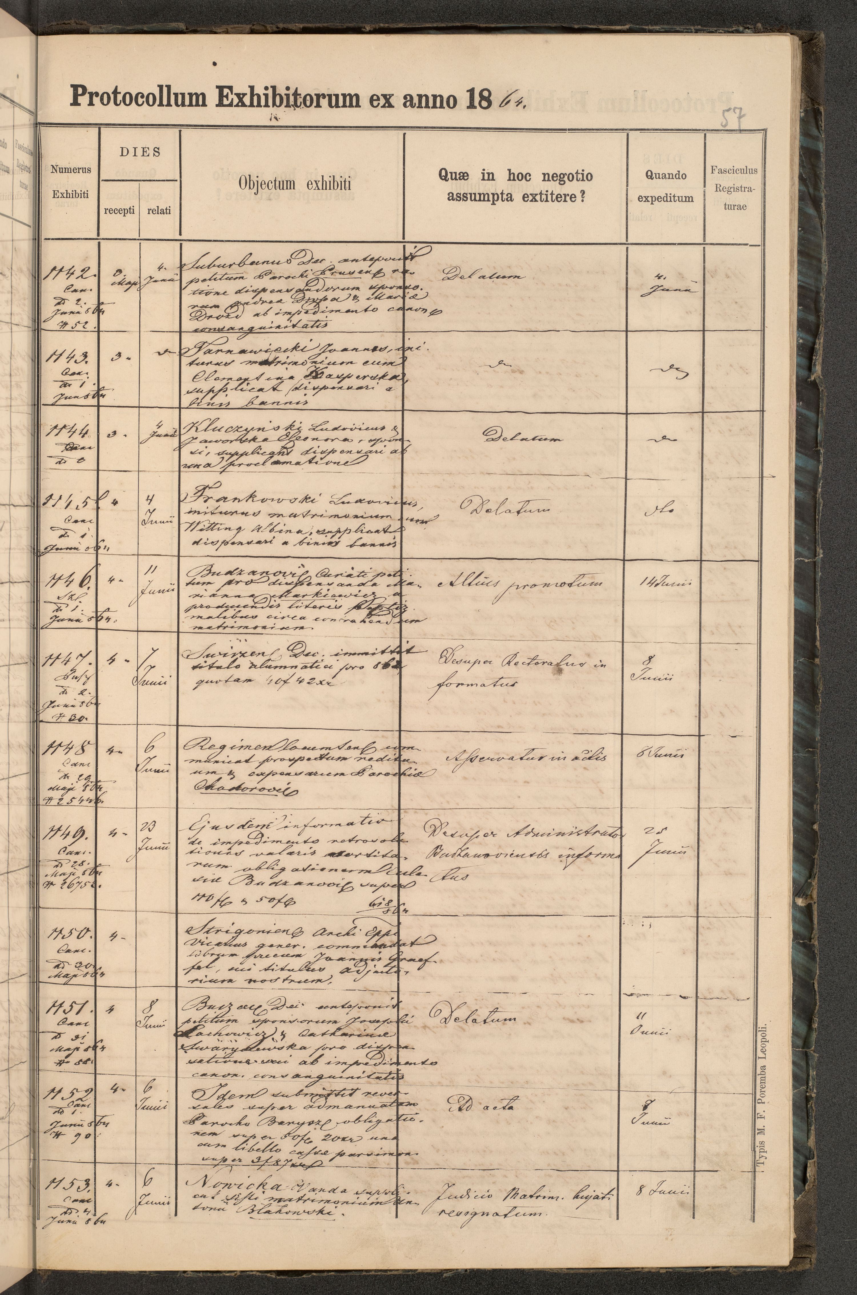 Protocollon exhibitorum in Ecclesiasticis ex anno 1864