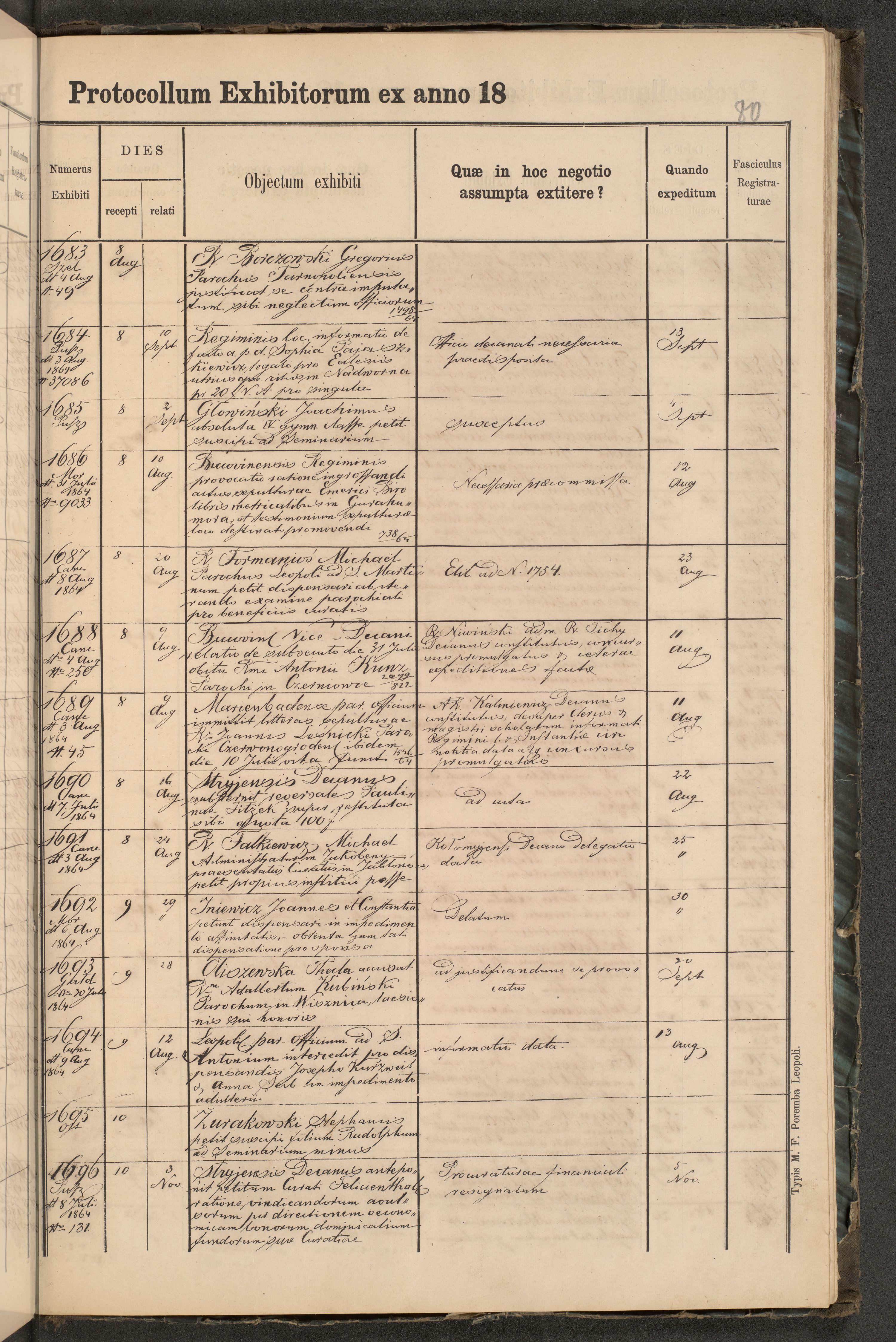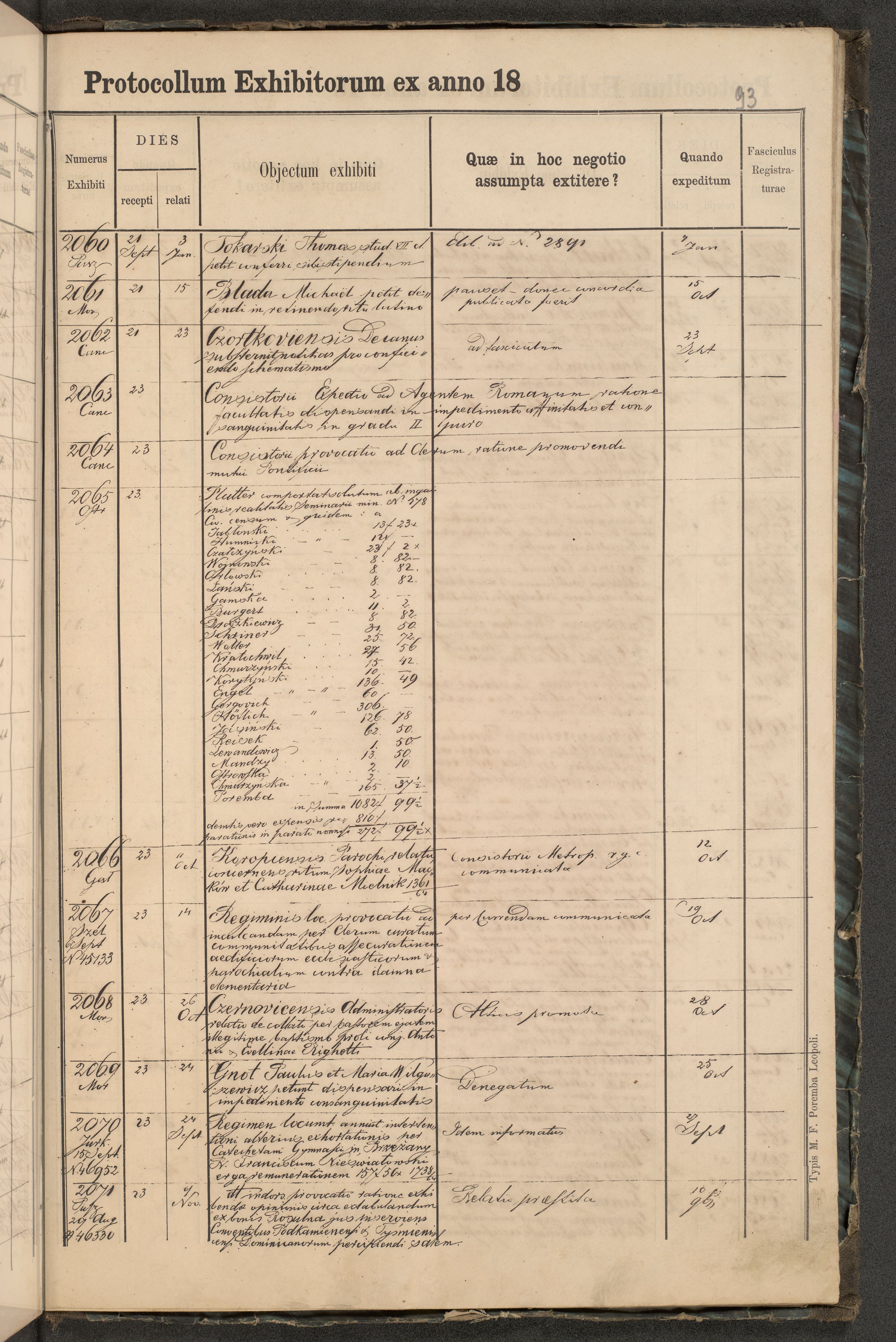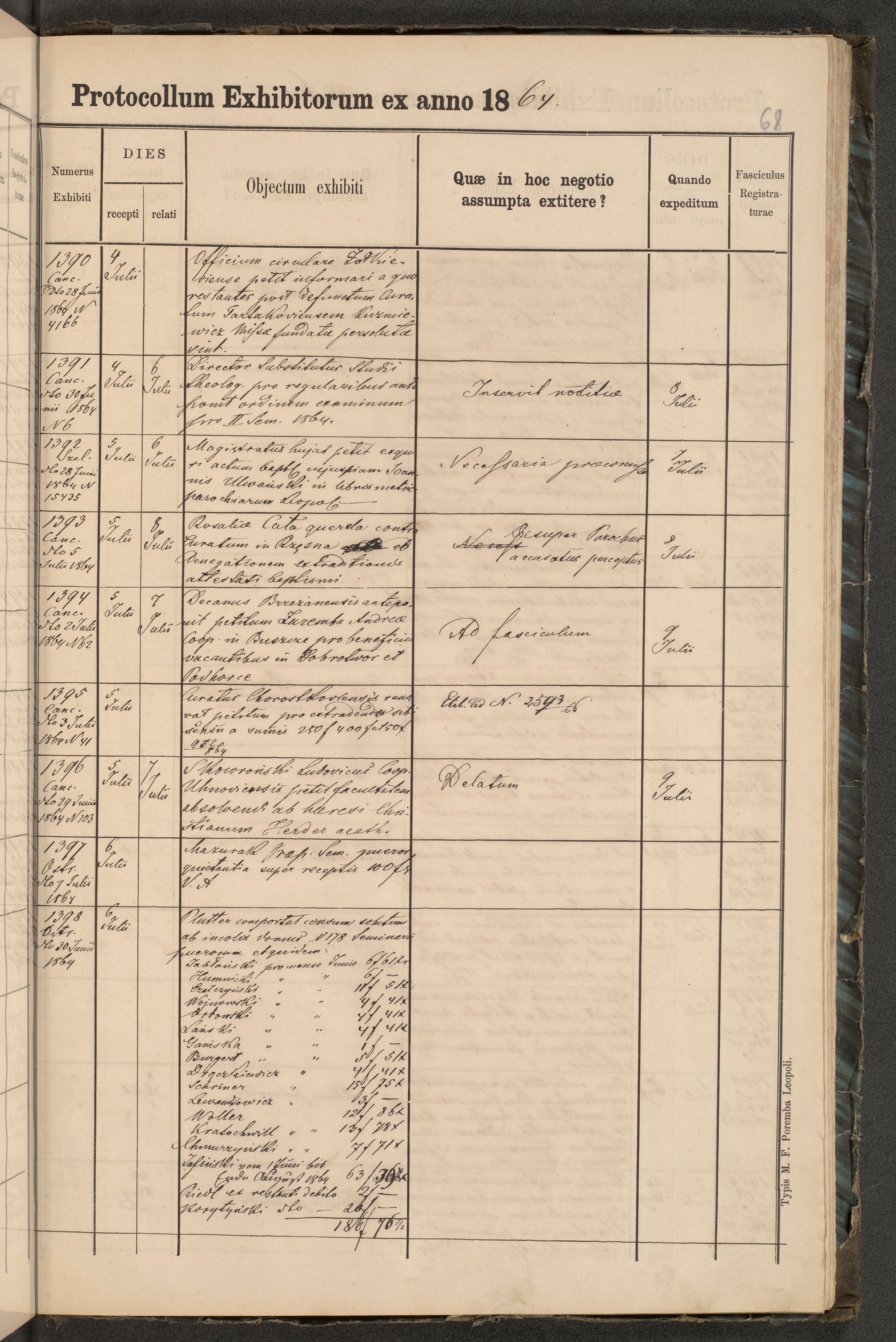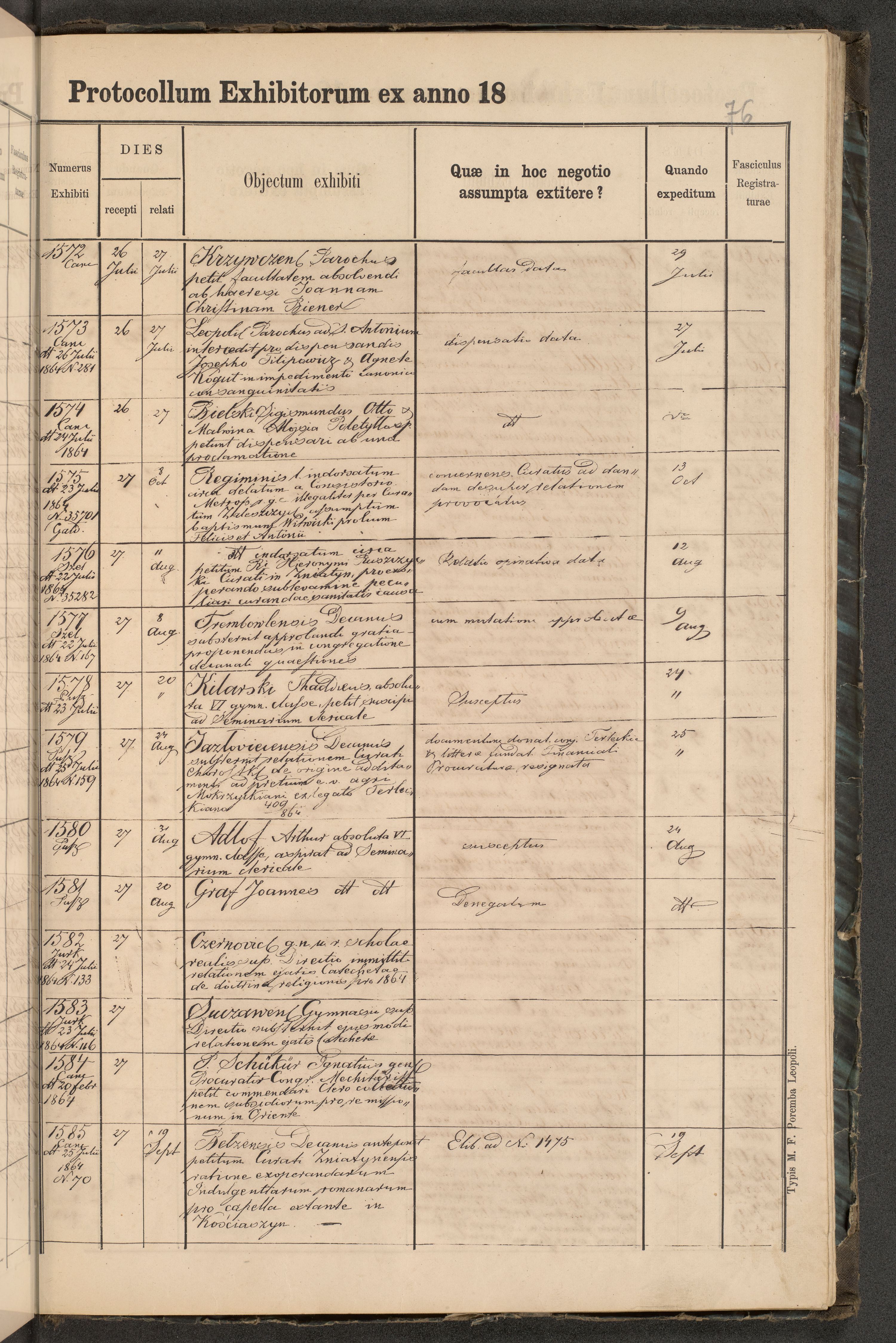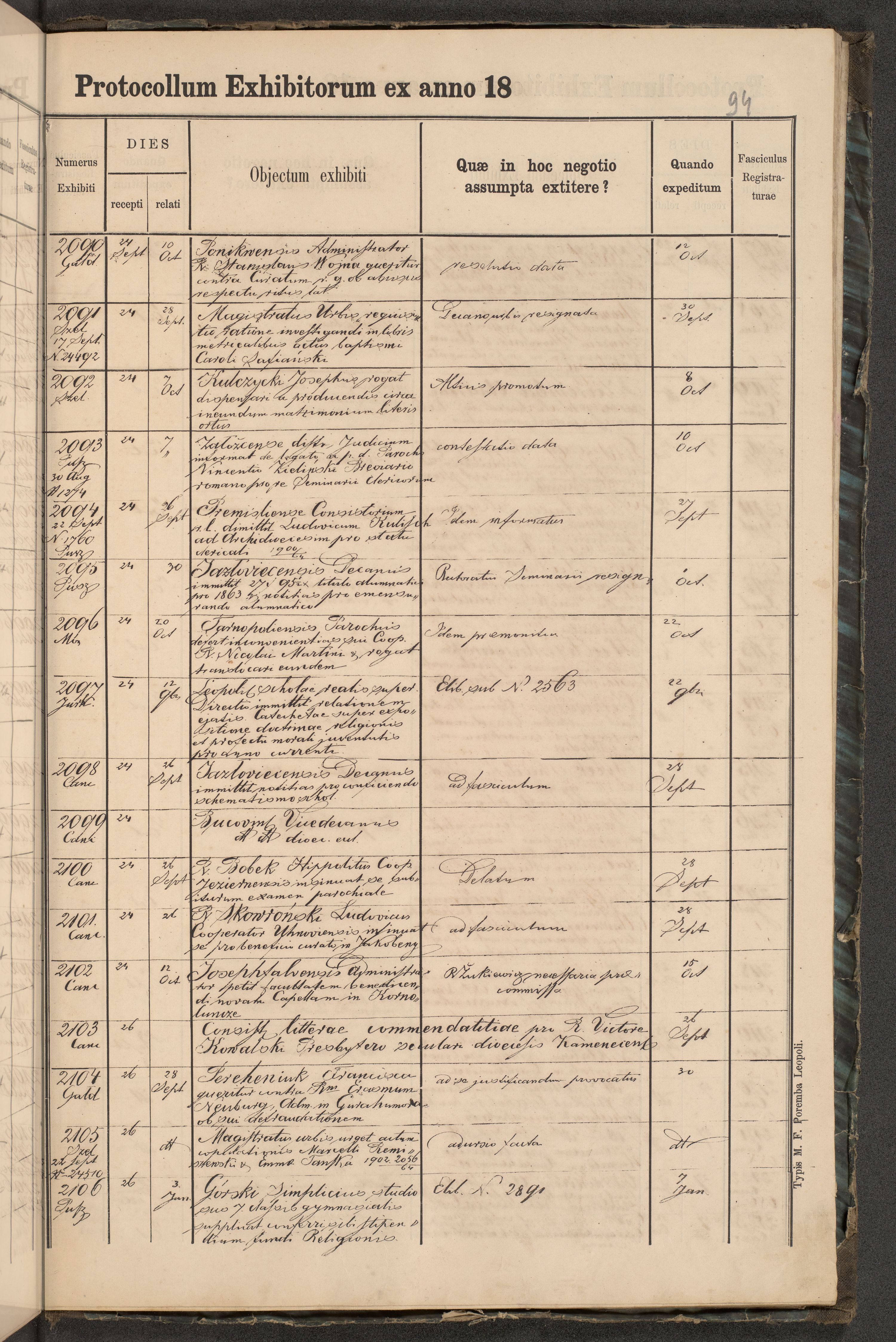 Protocollon exhibitorum in Ecclesiasticis ex anno 1864