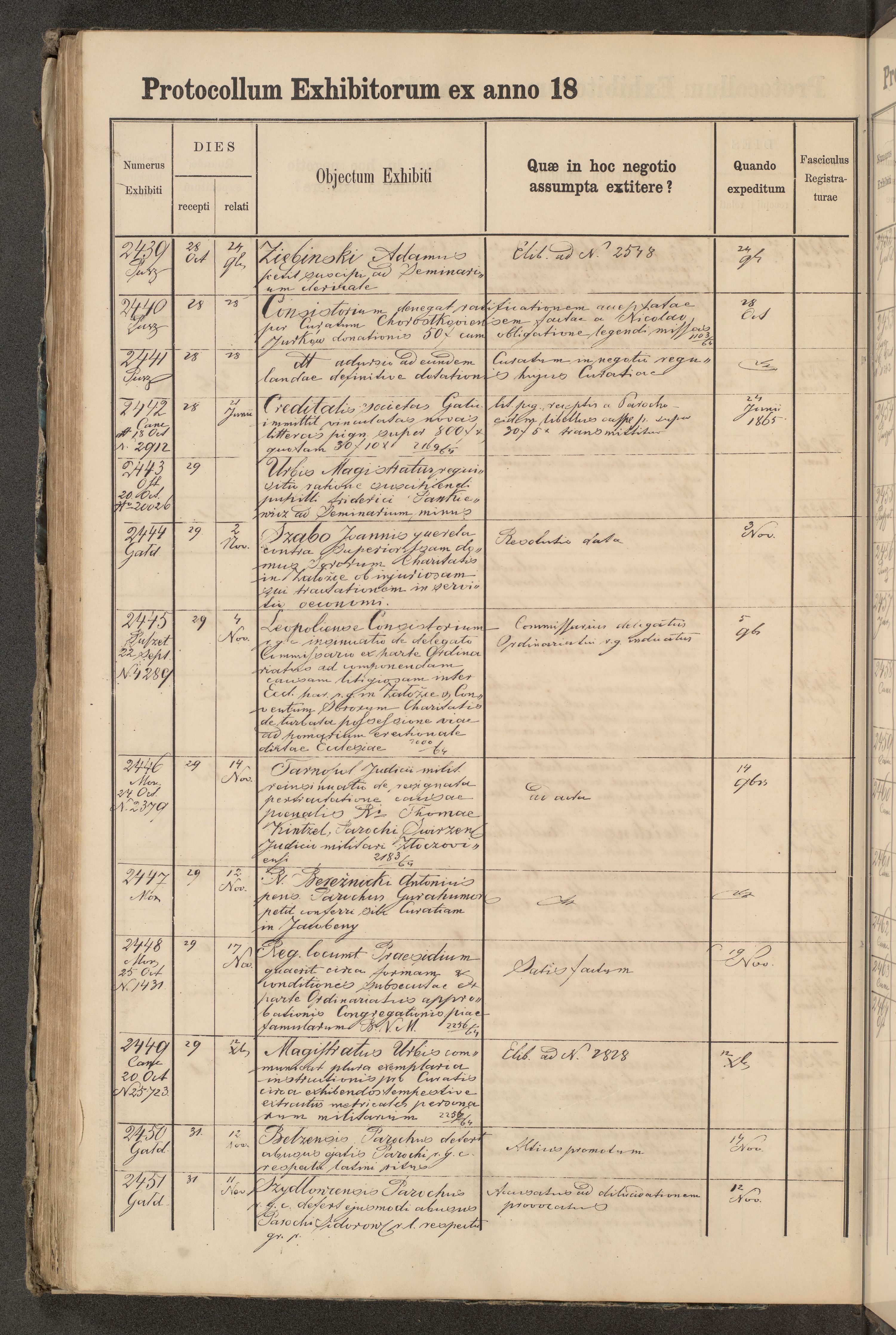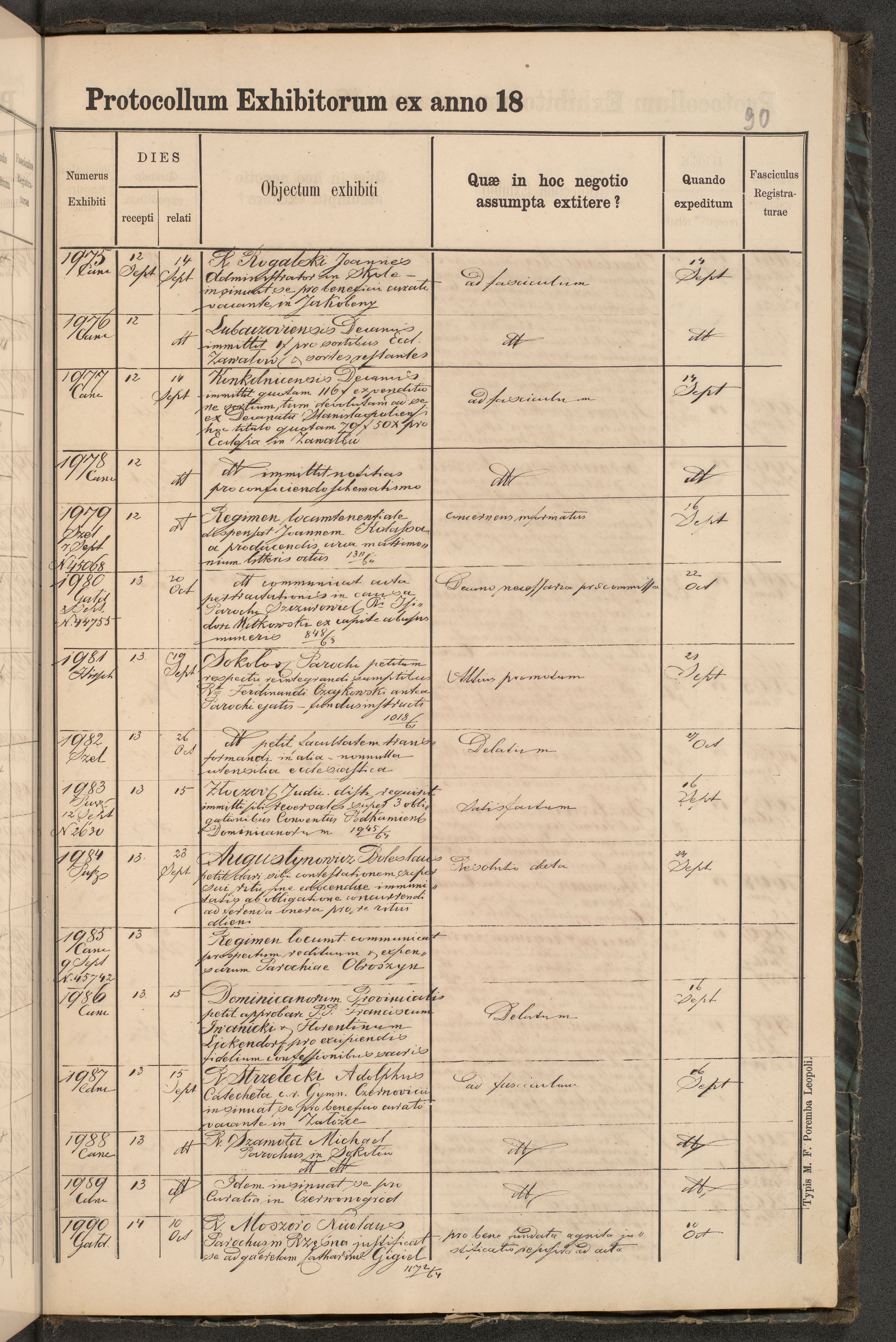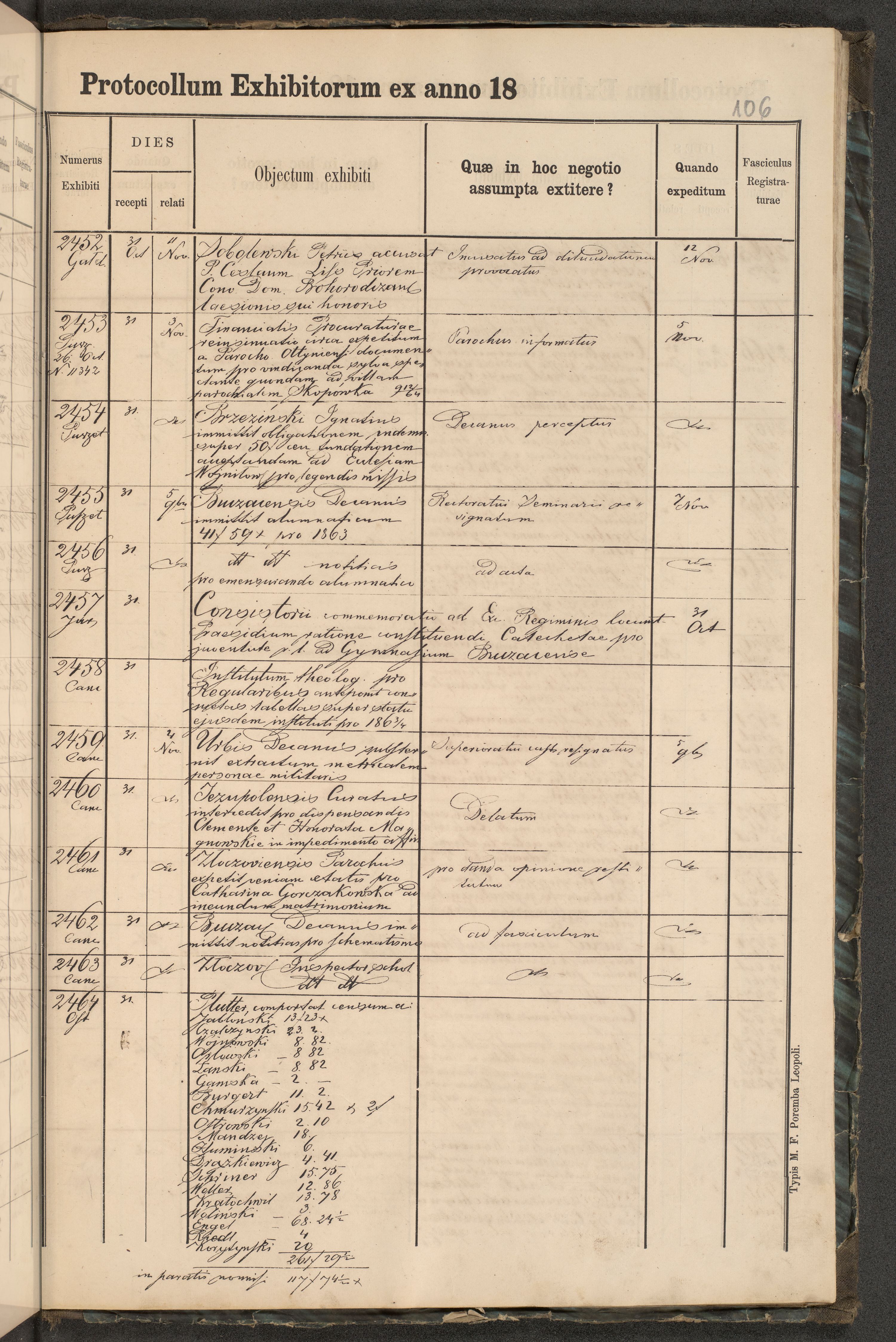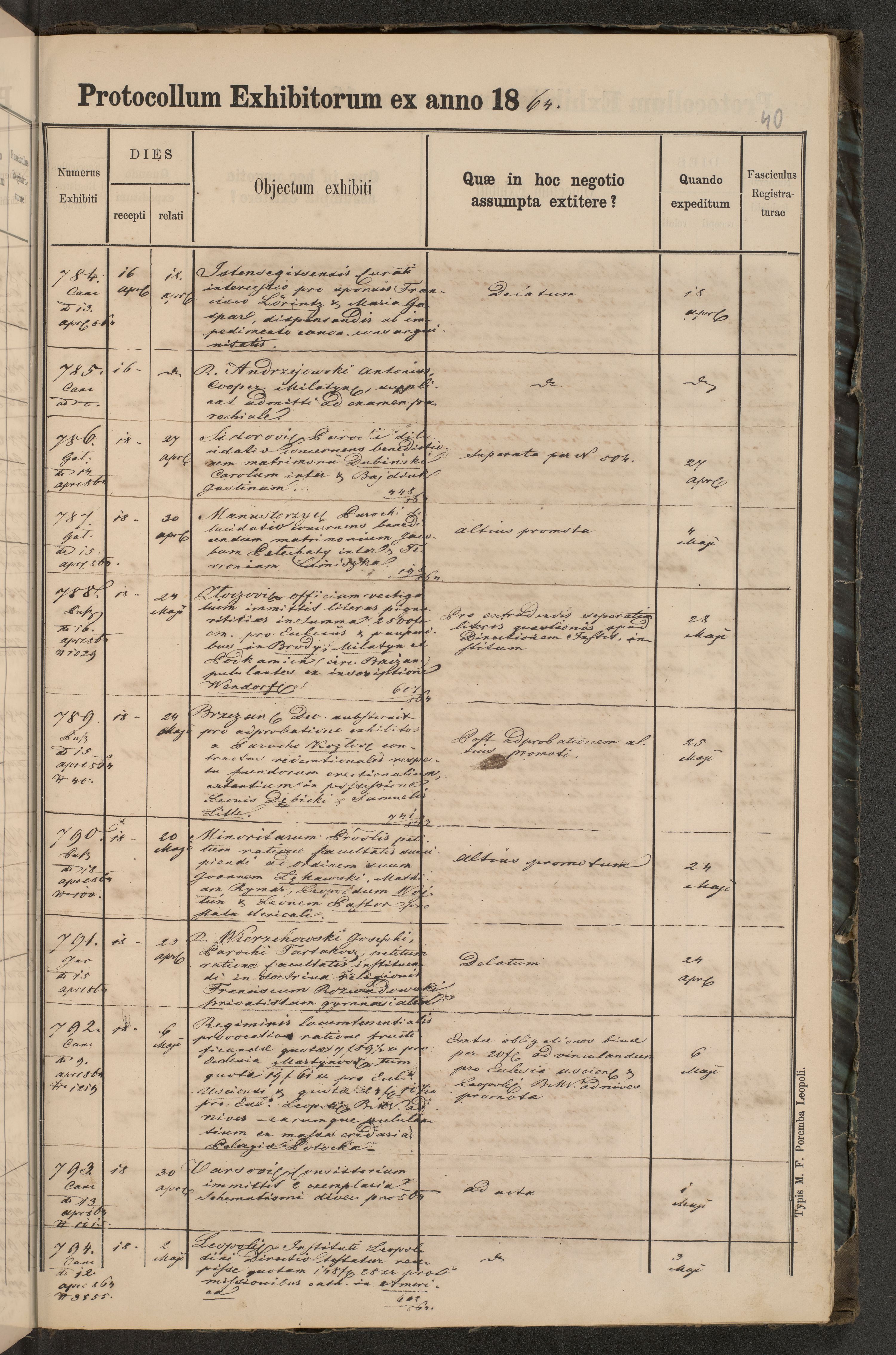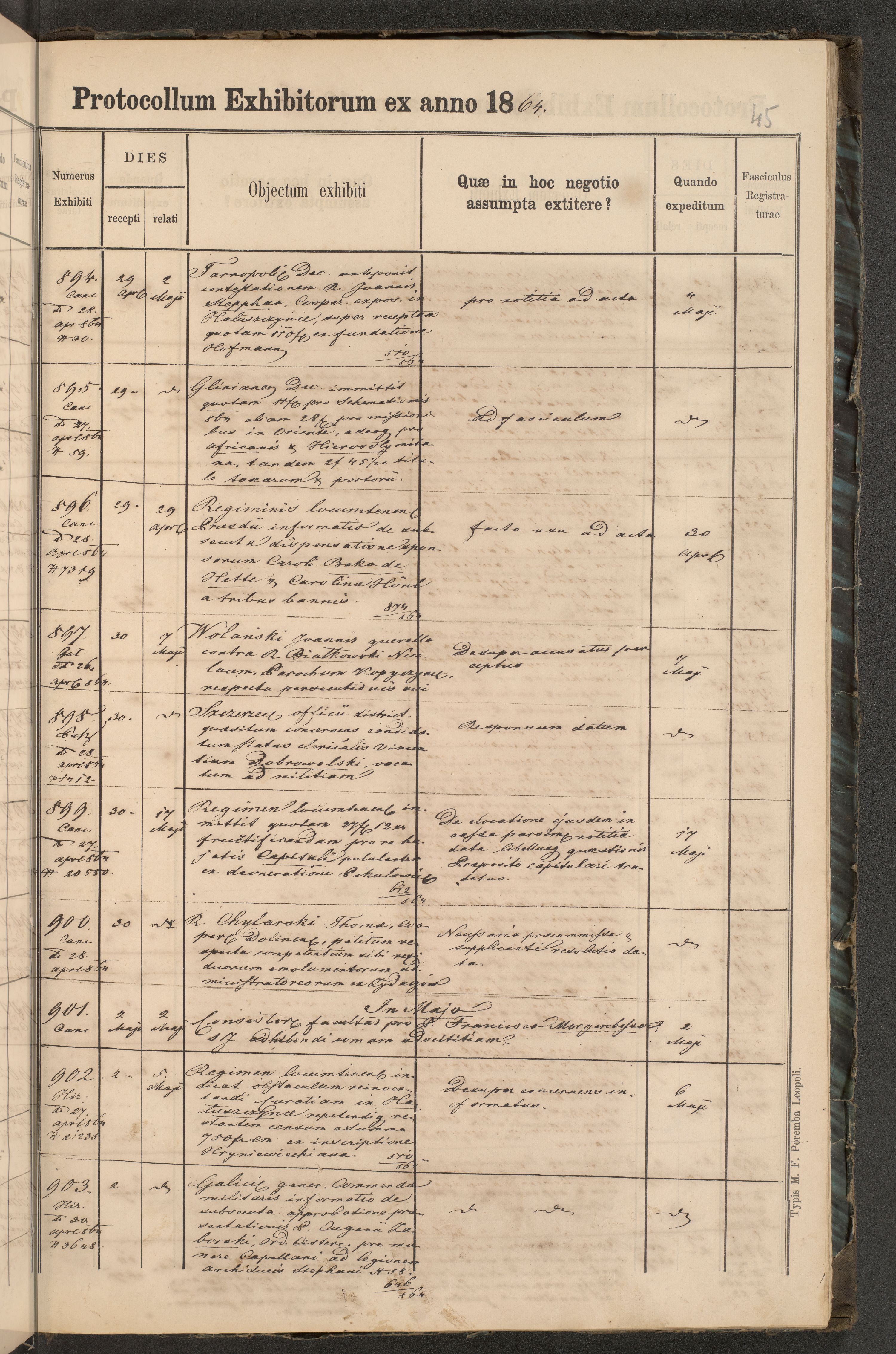 Protocollon exhibitorum in Ecclesiasticis ex anno 1864