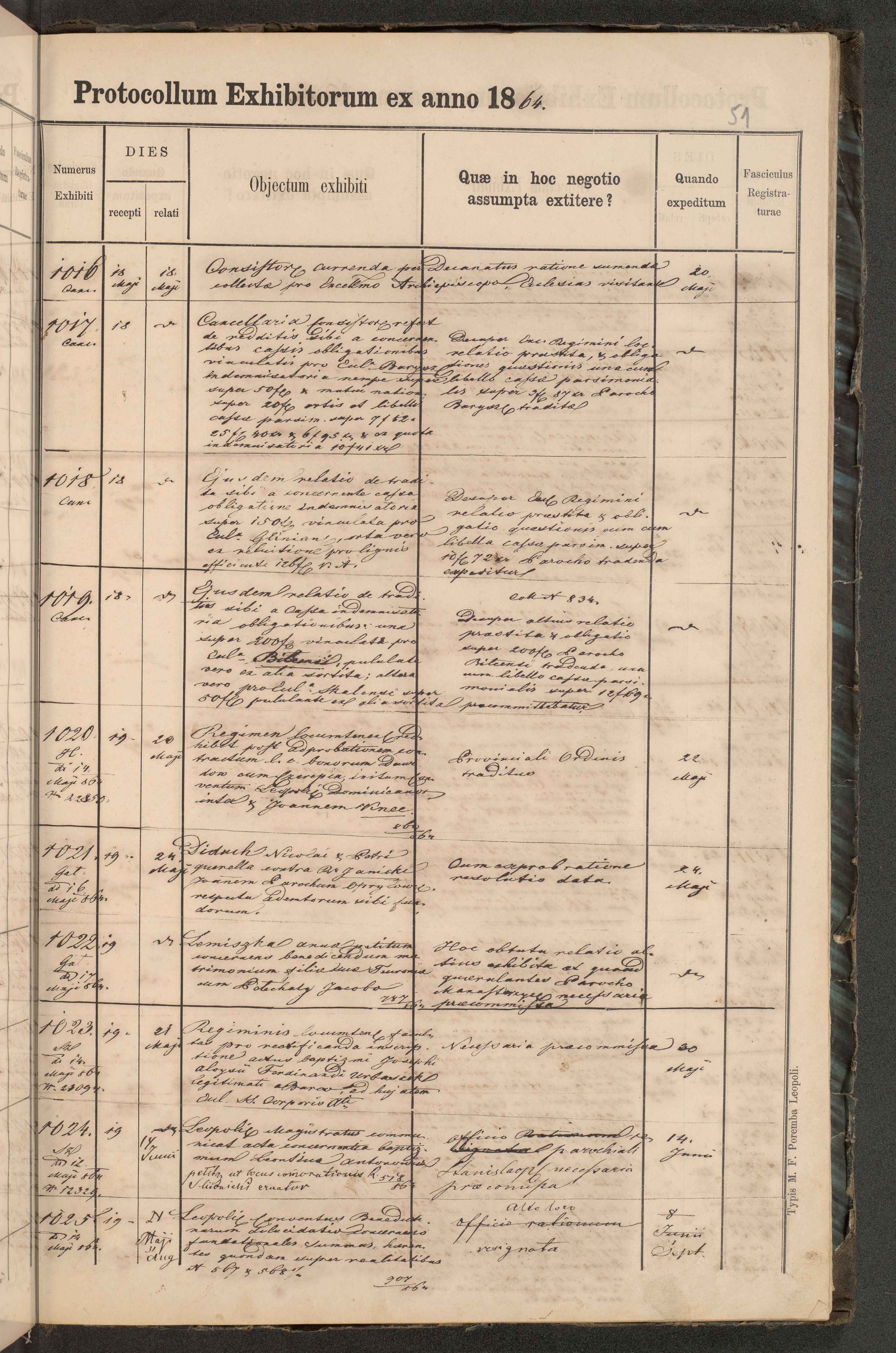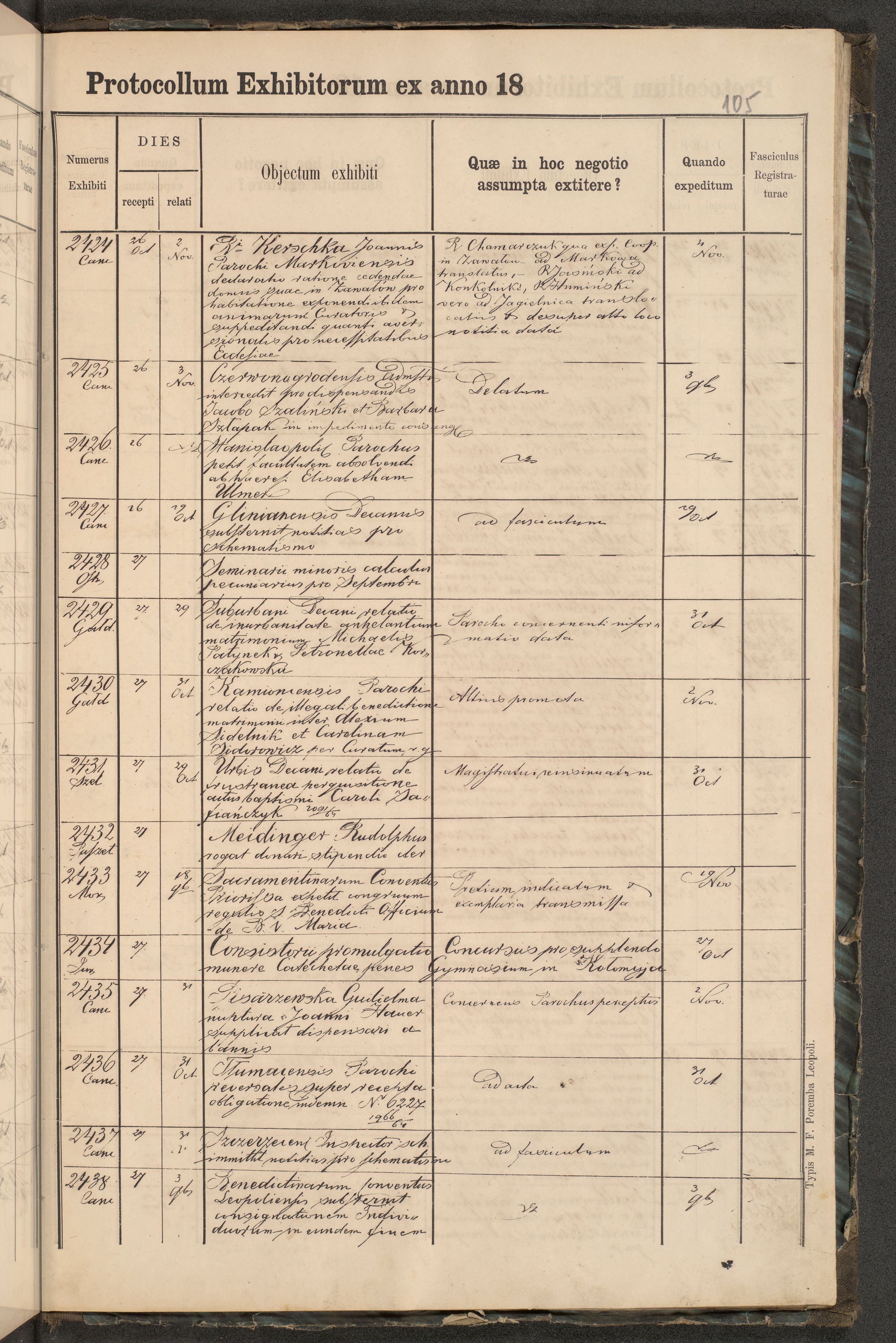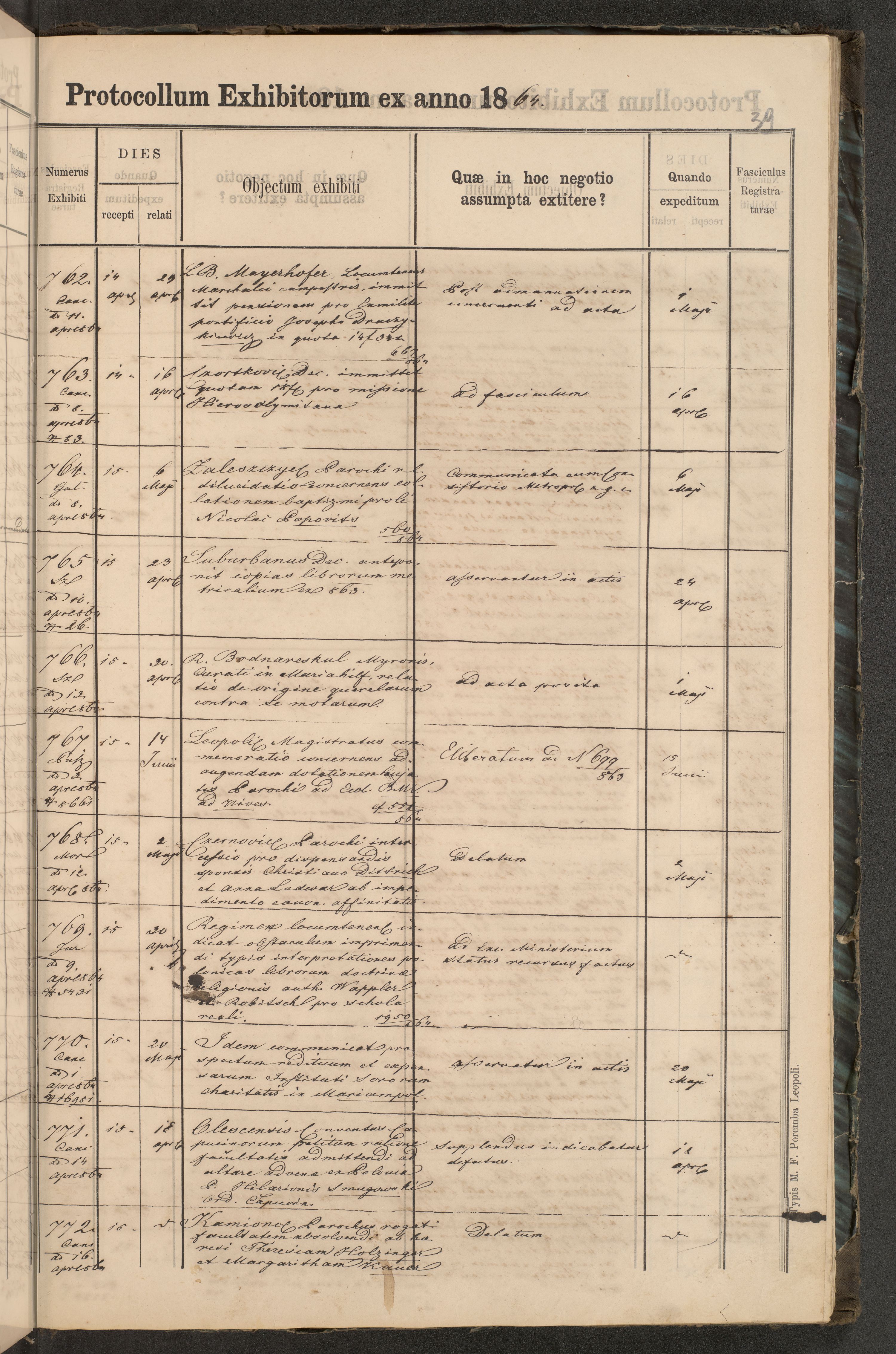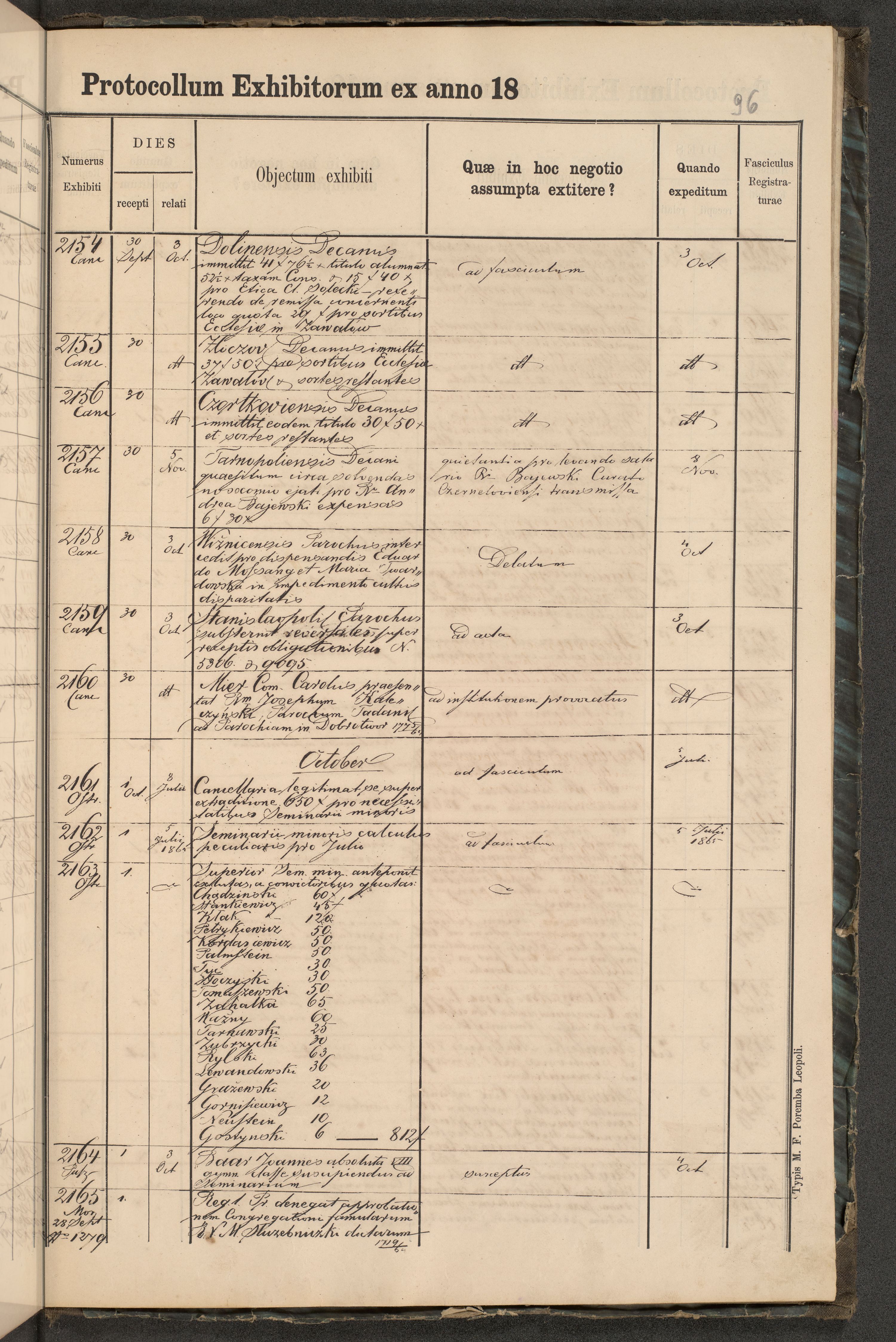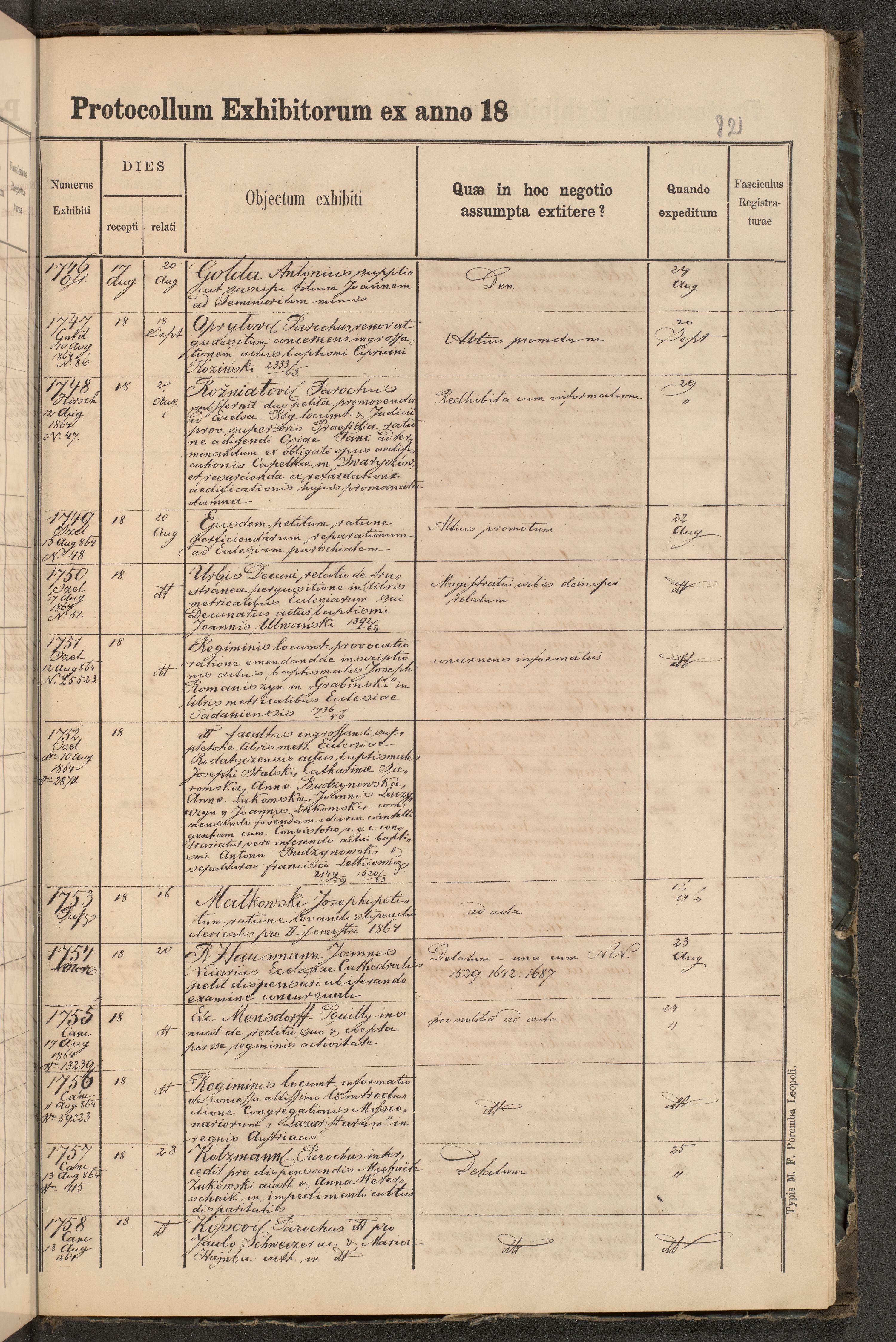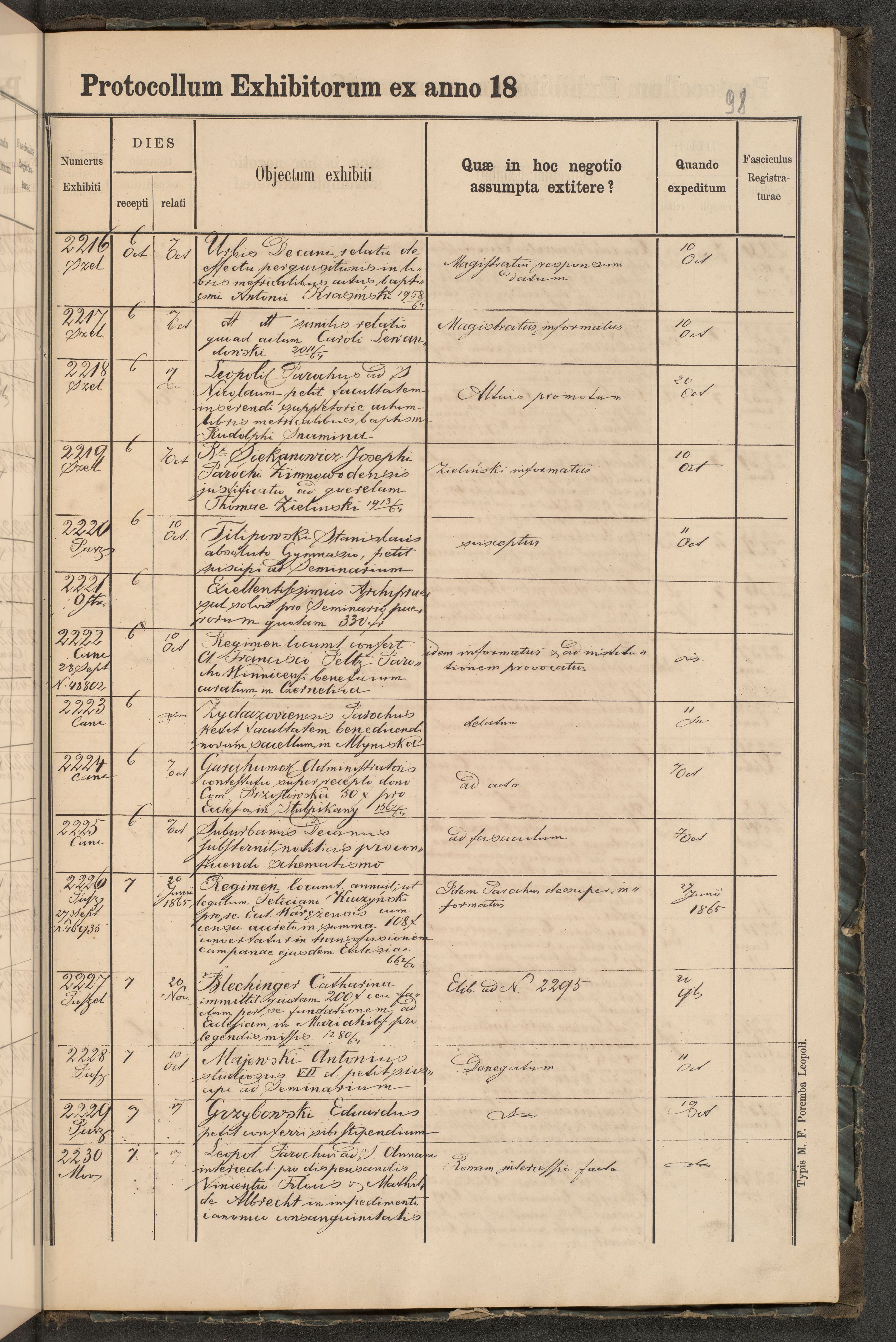 Protocollon exhibitorum in Ecclesiasticis ex anno 1864