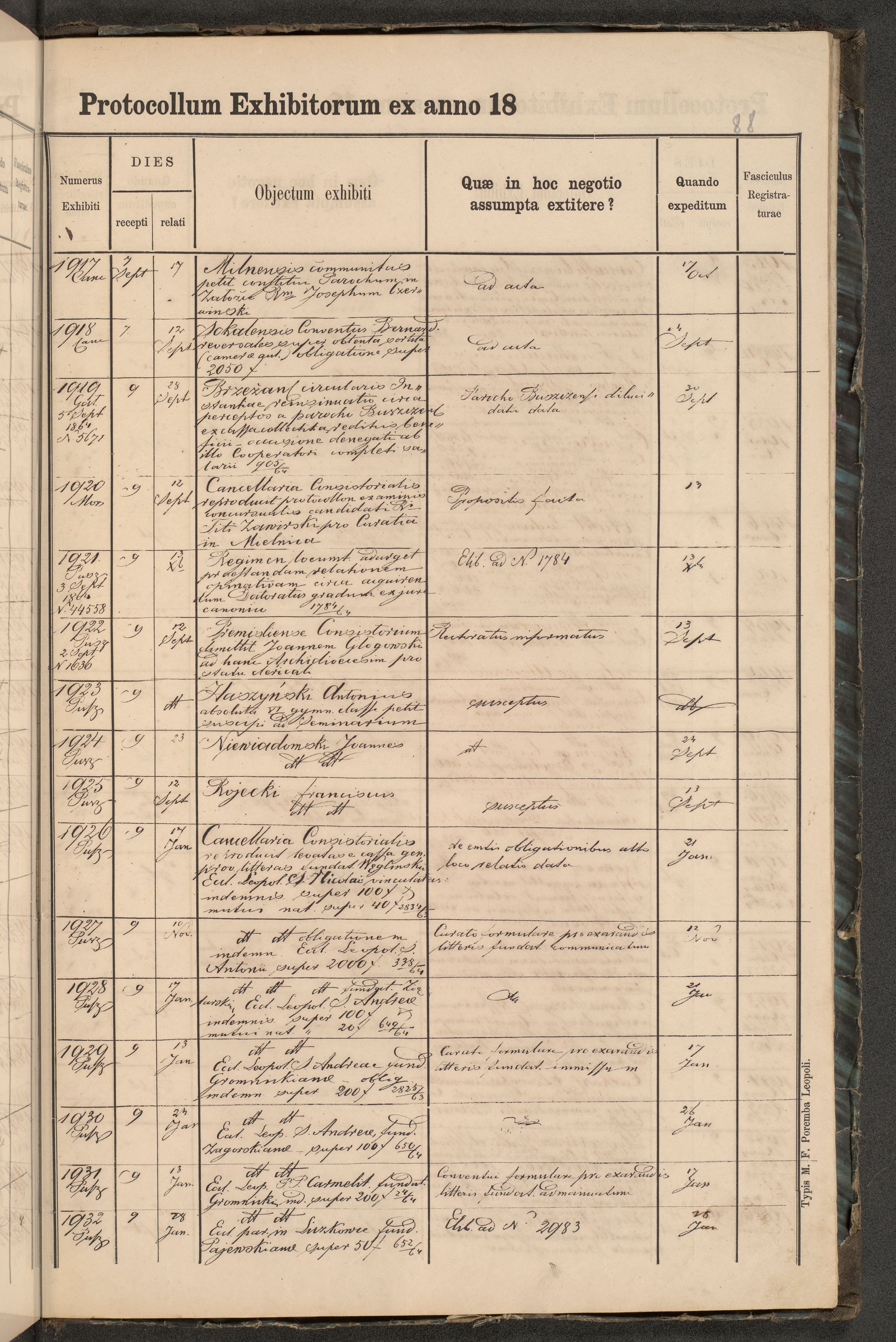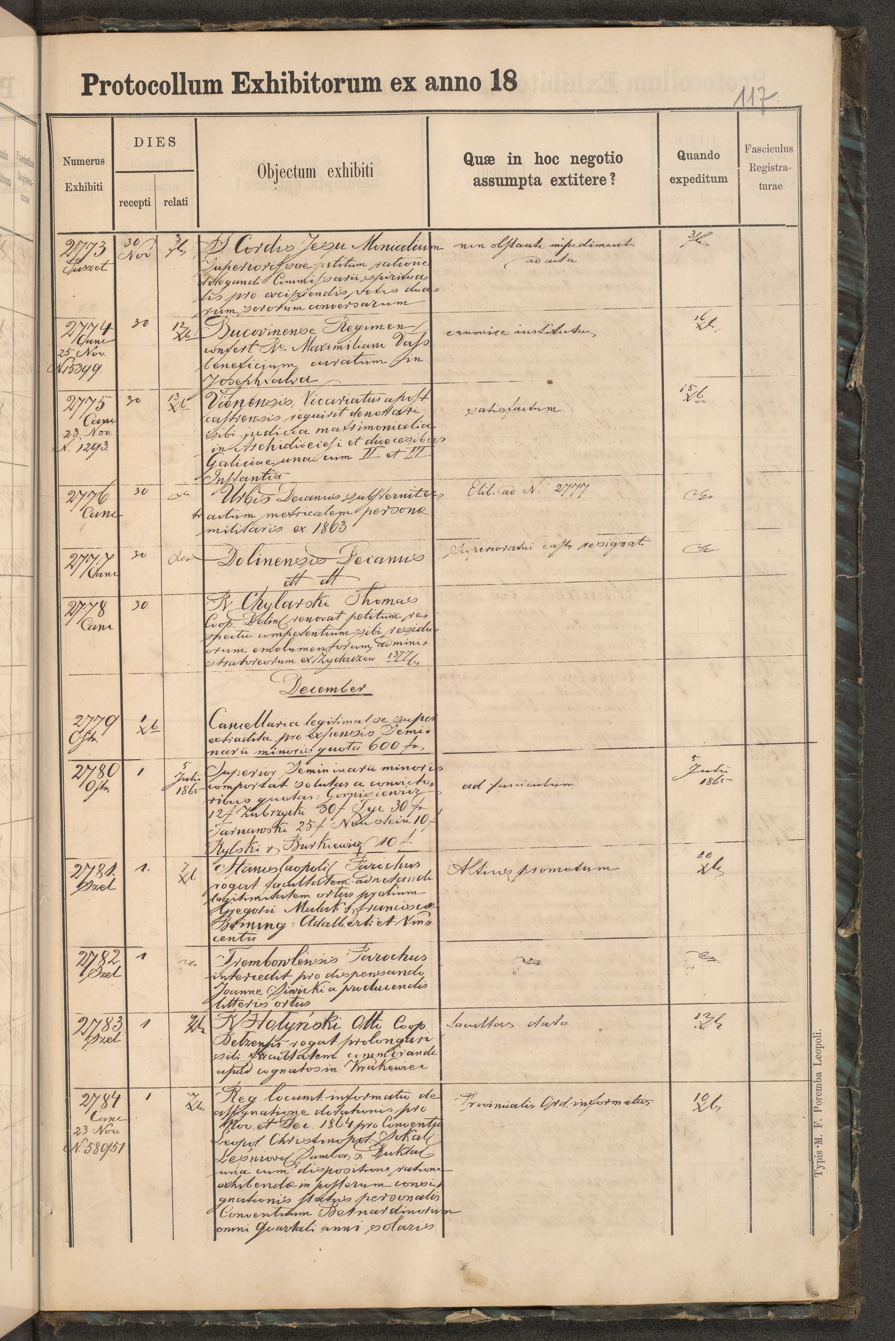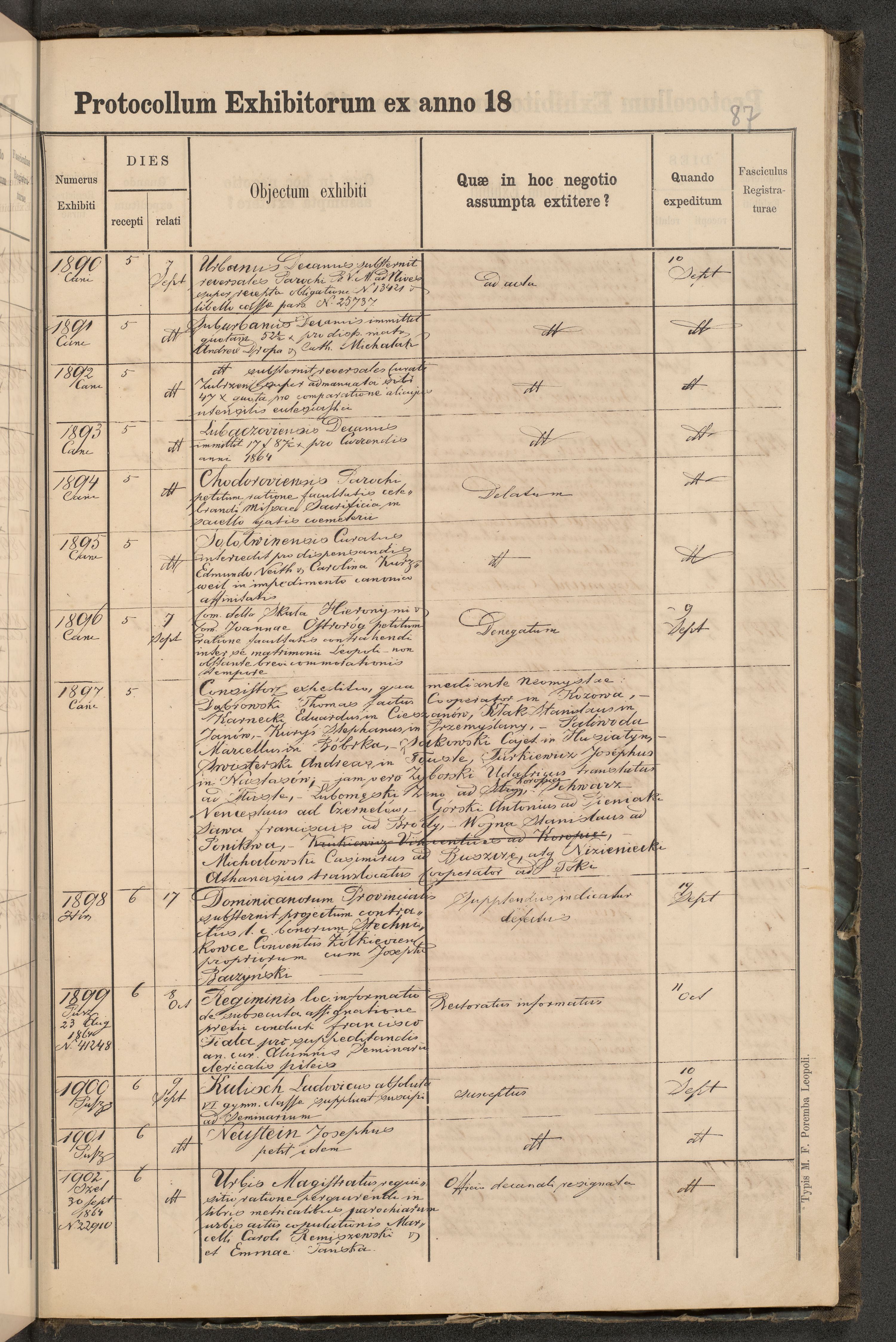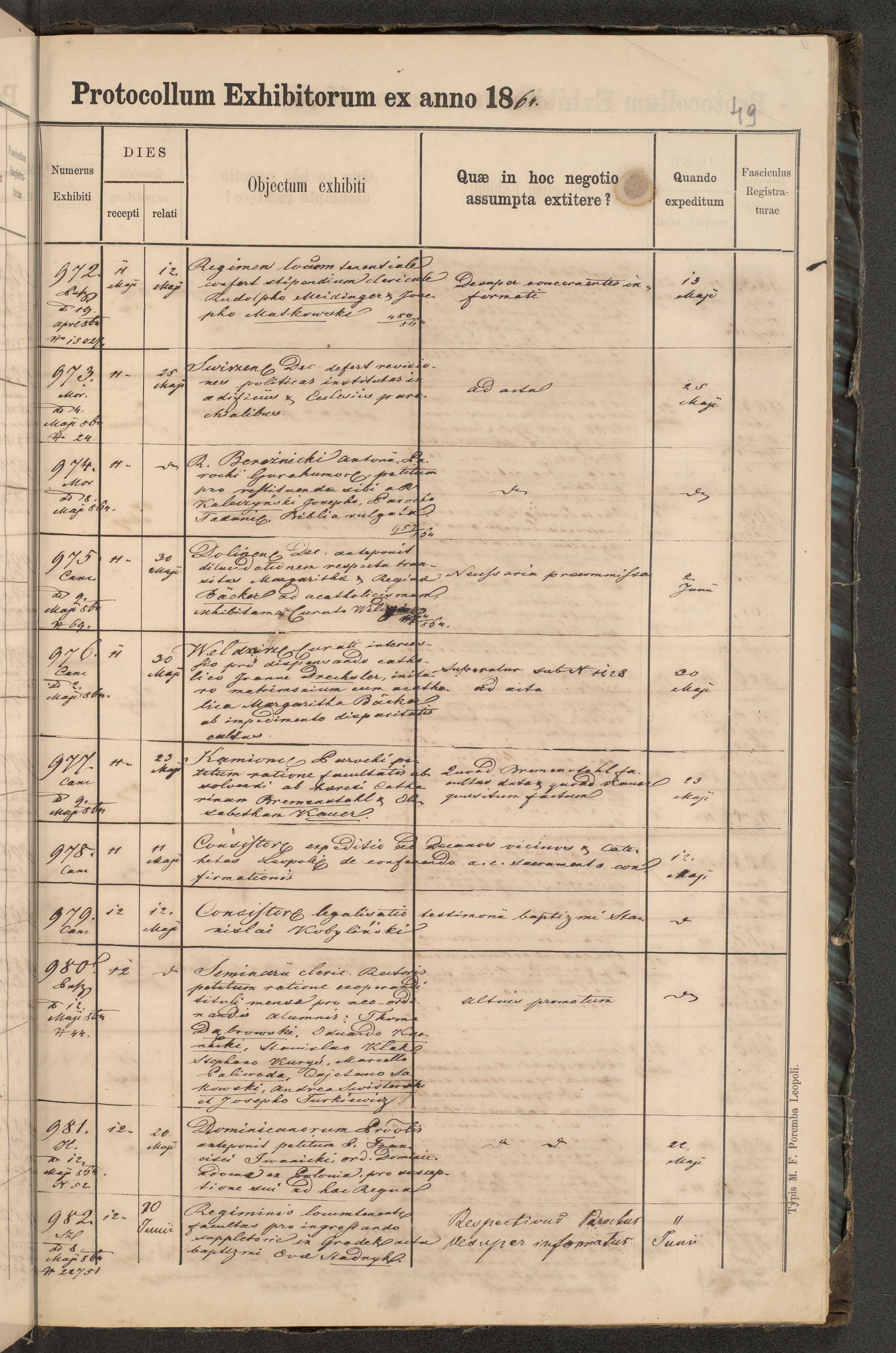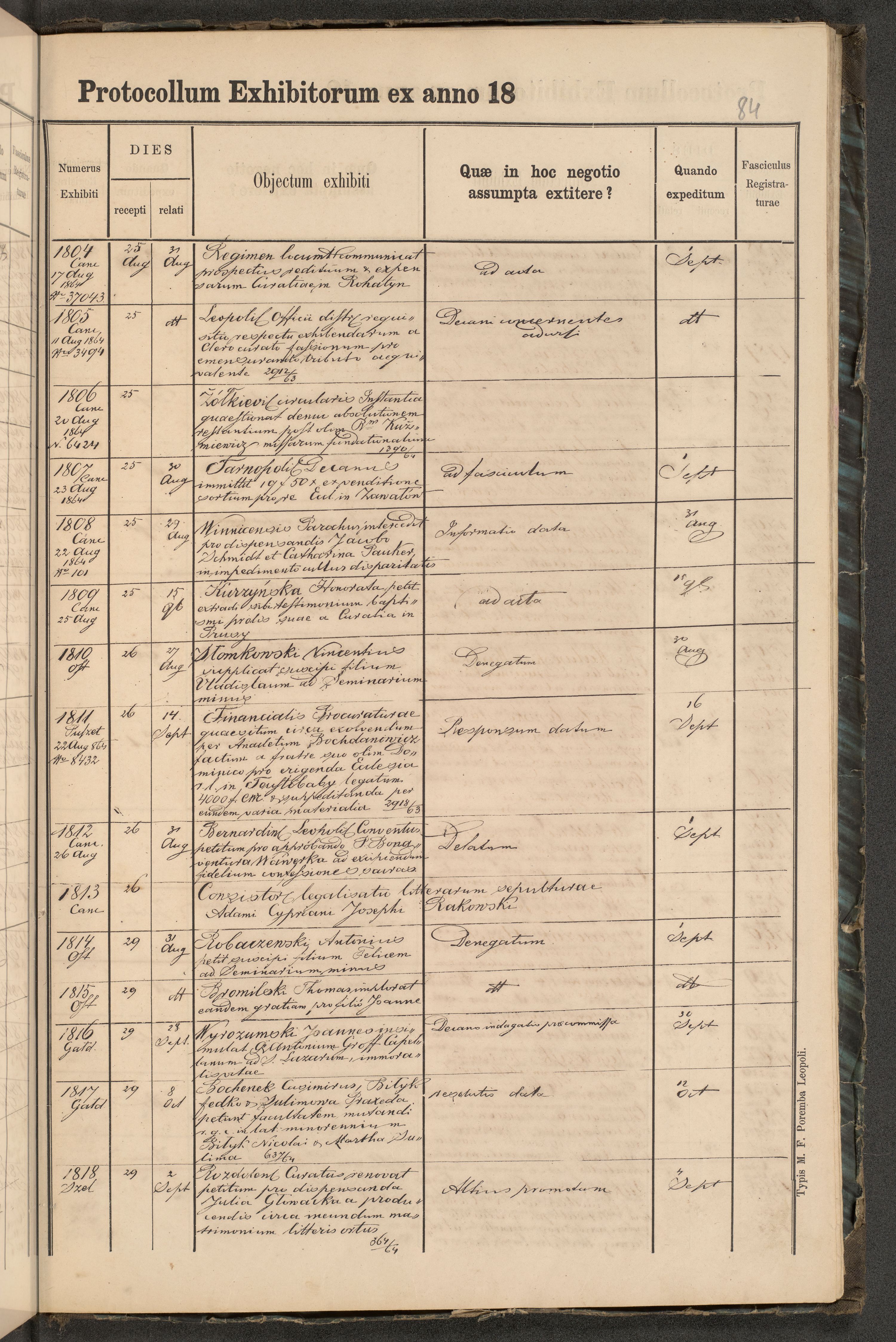 Protocollon exhibitorum in Ecclesiasticis ex anno 1864