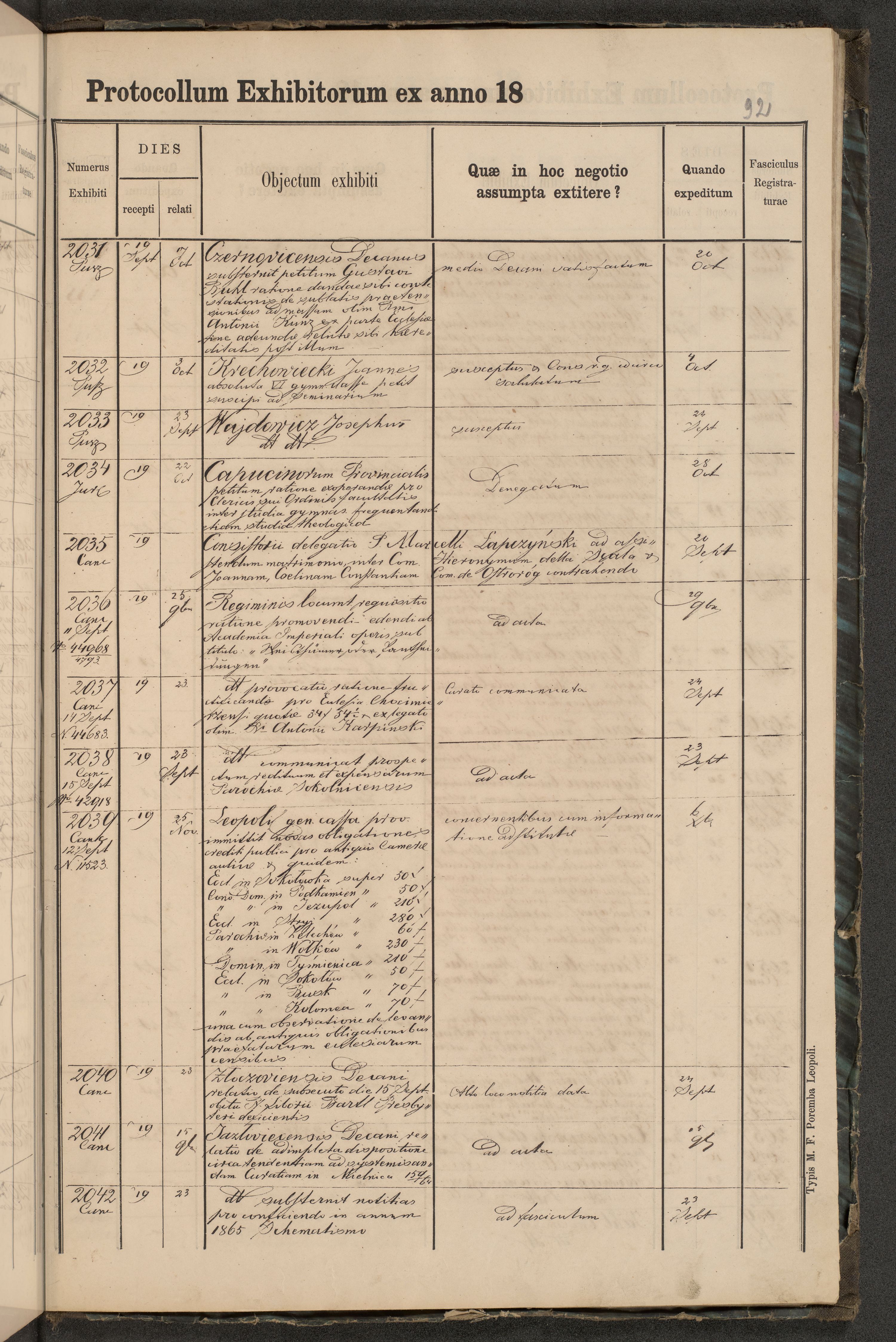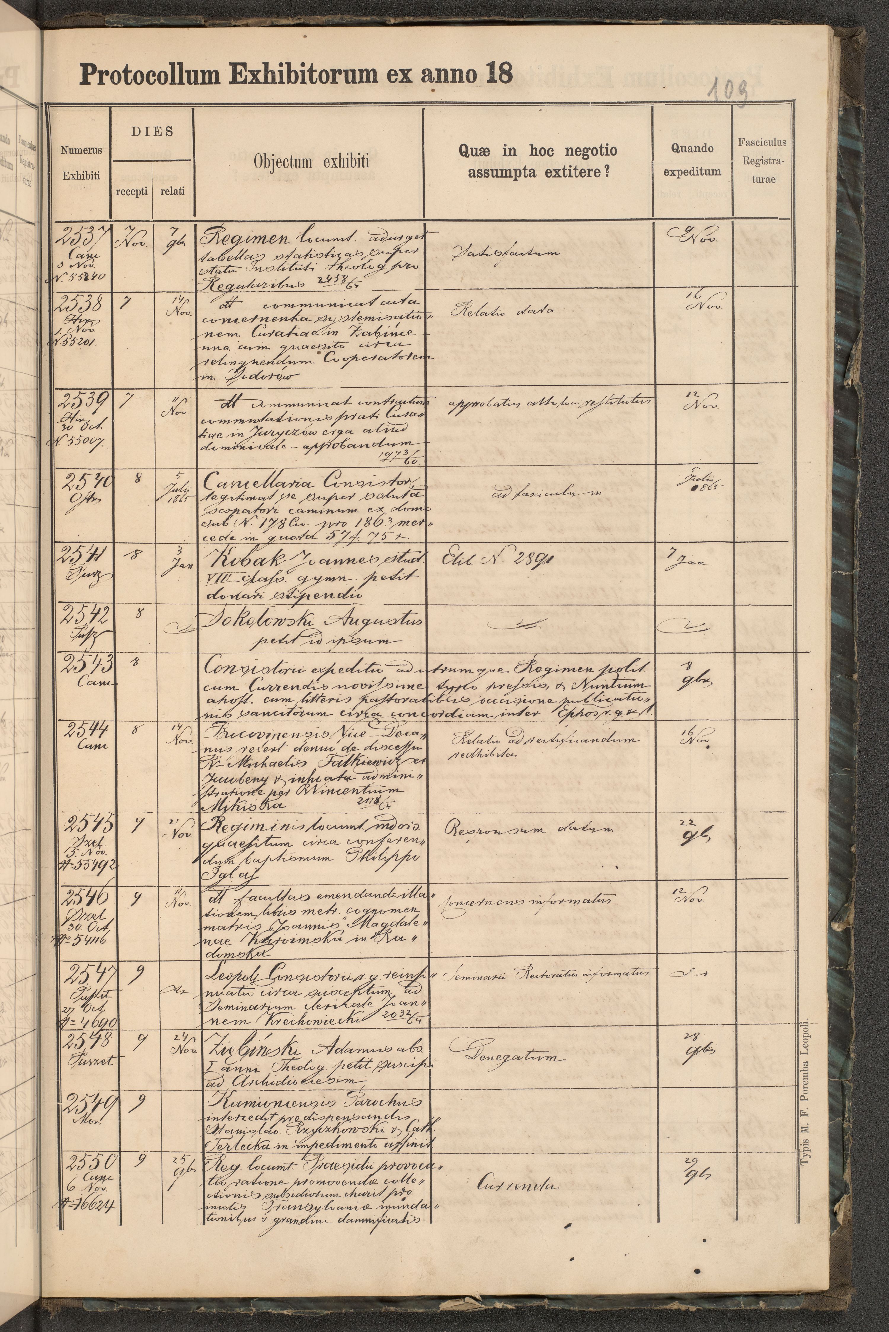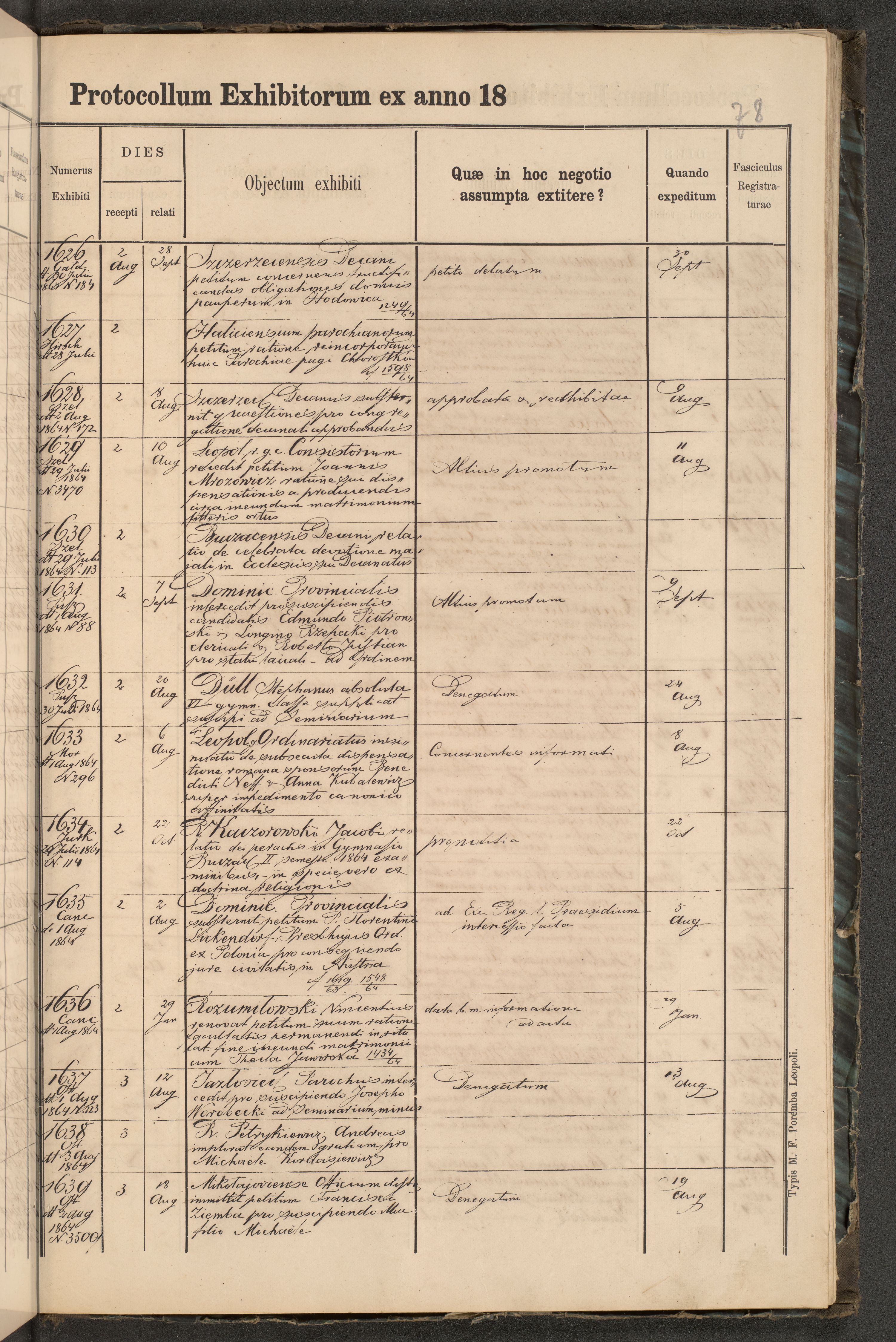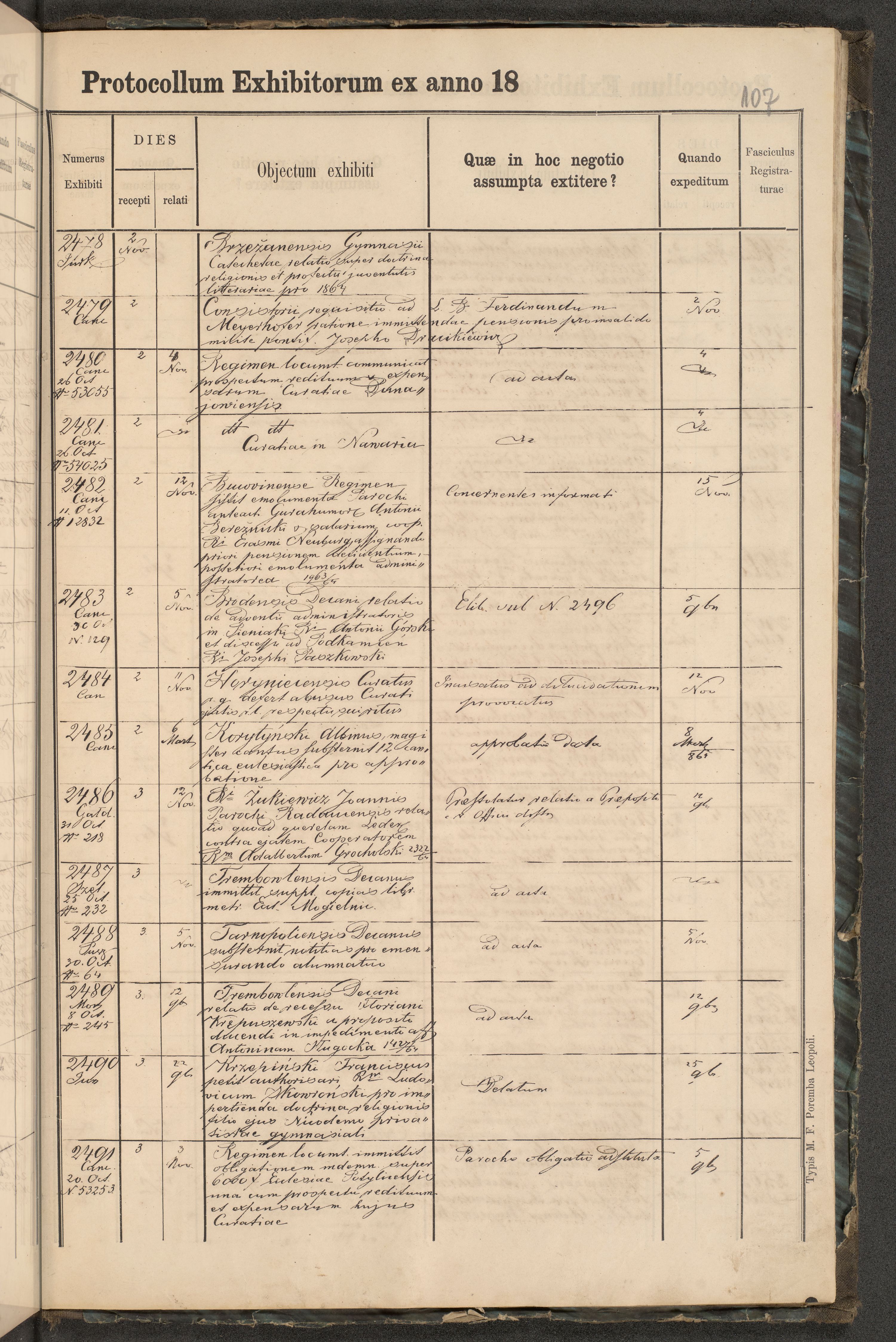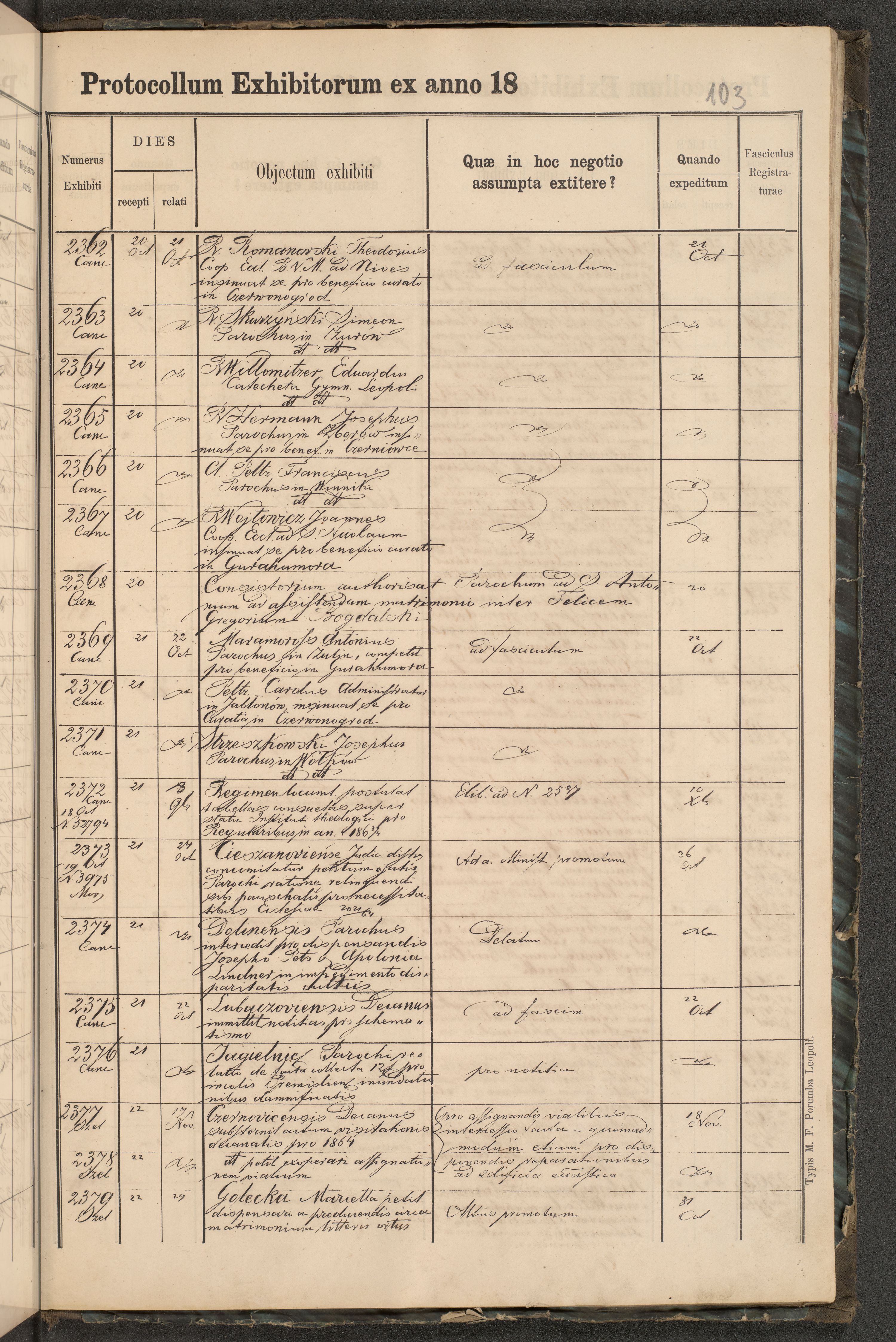 Protocollon exhibitorum in Ecclesiasticis ex anno 1864