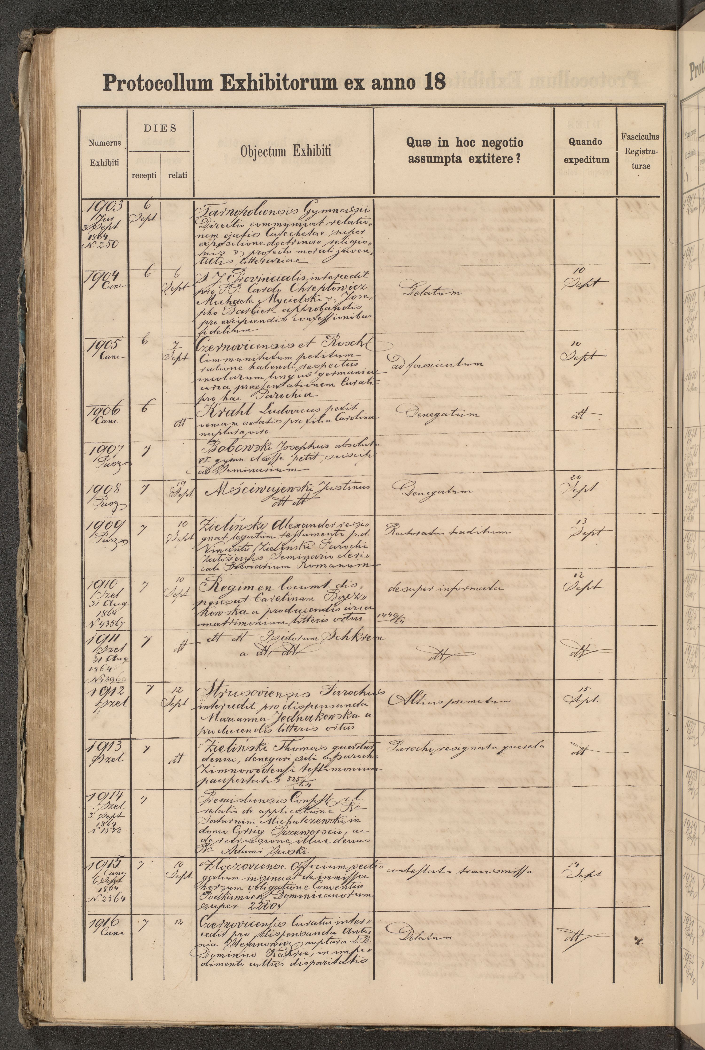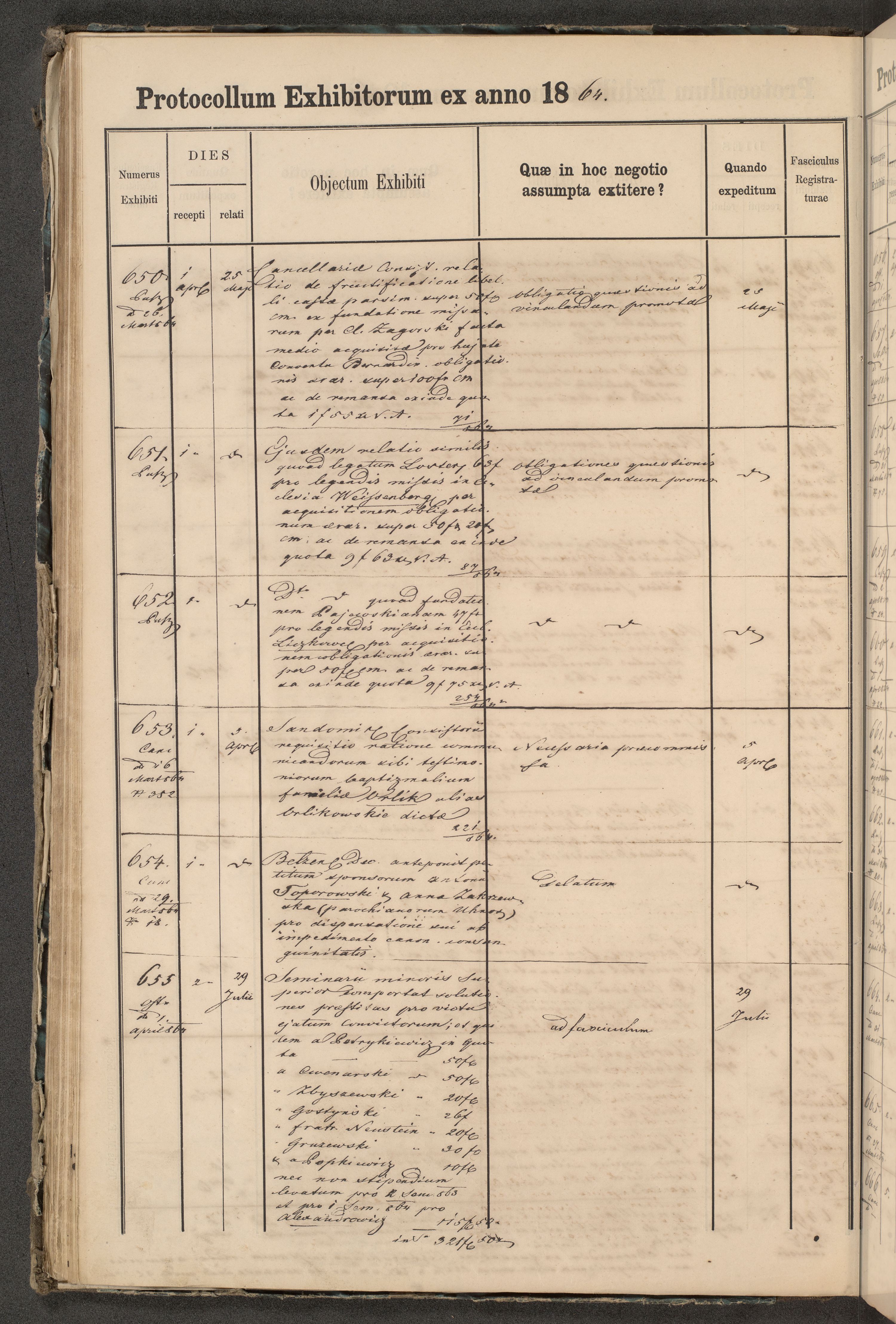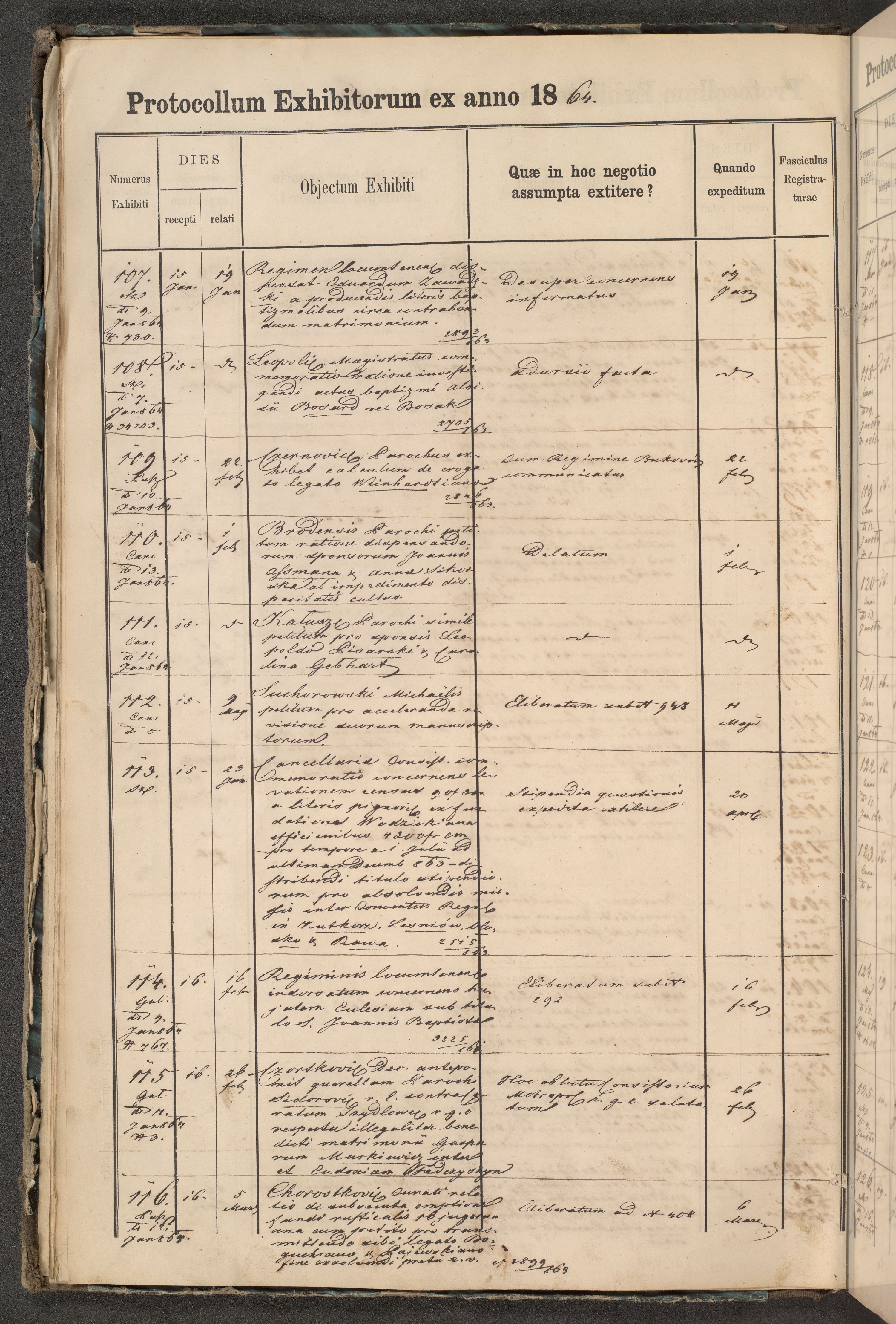 Księga protokołu podawczego konsystorza metropolitalnego obrządku łacińskiego we Lwowie za rok 1864.