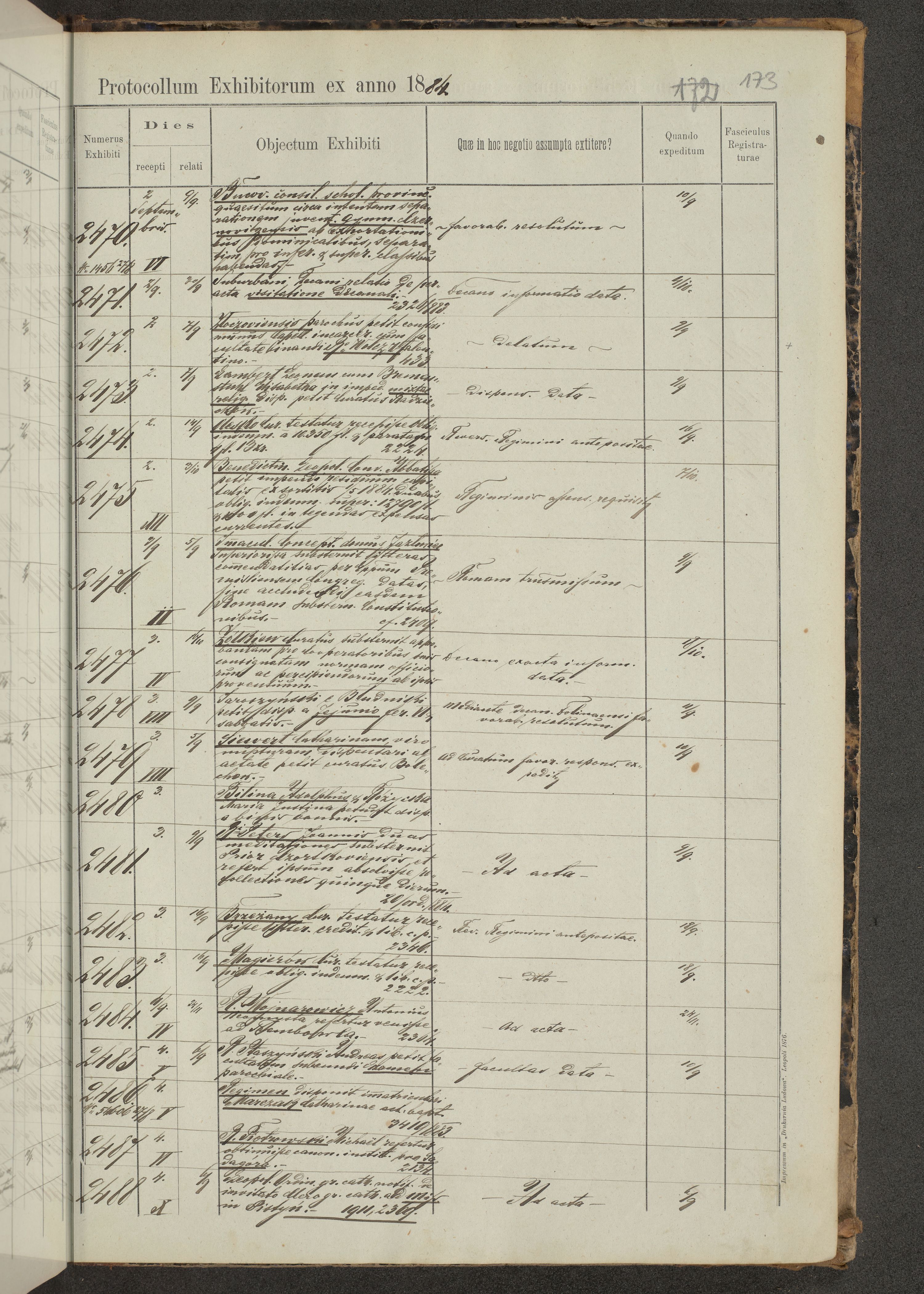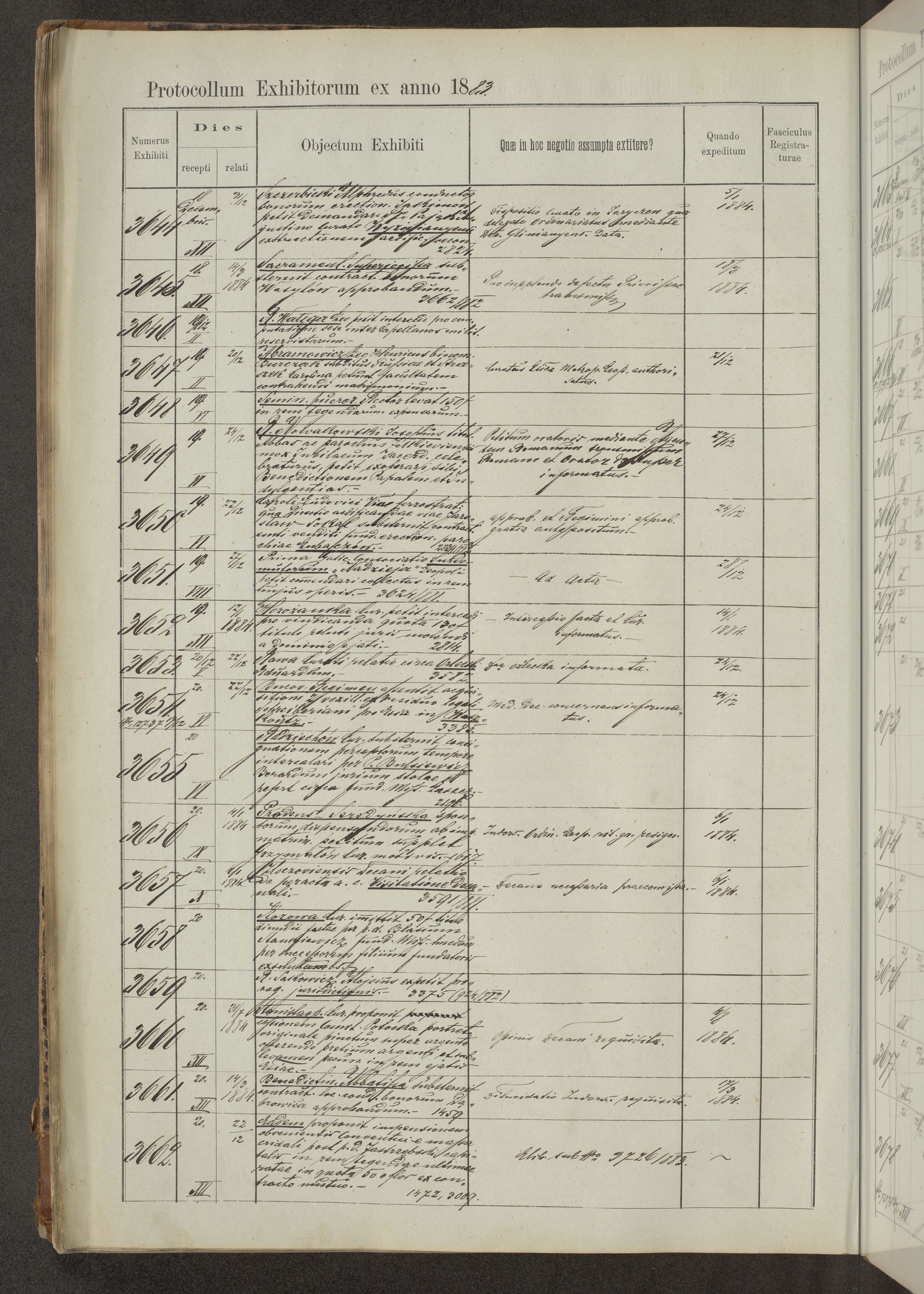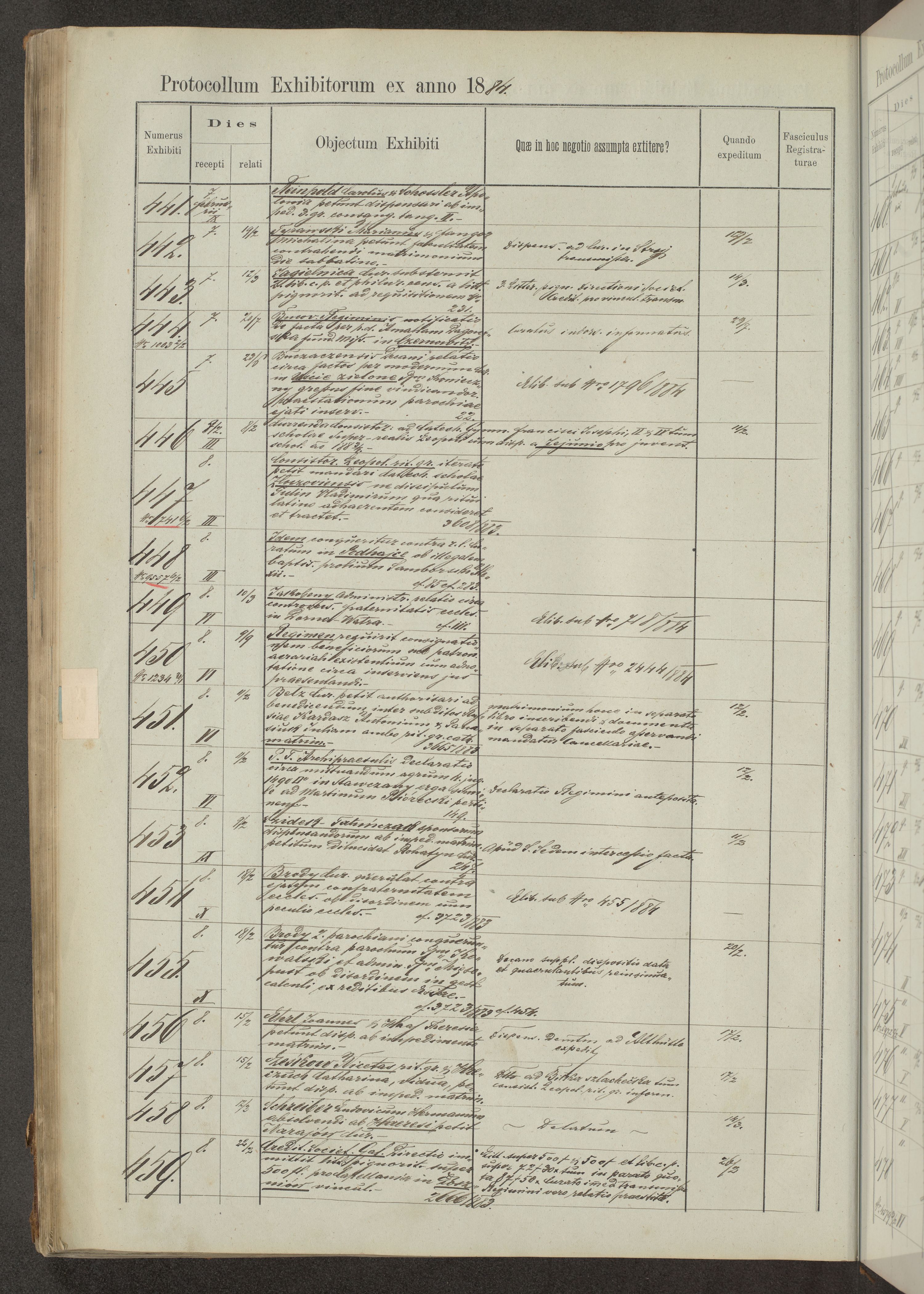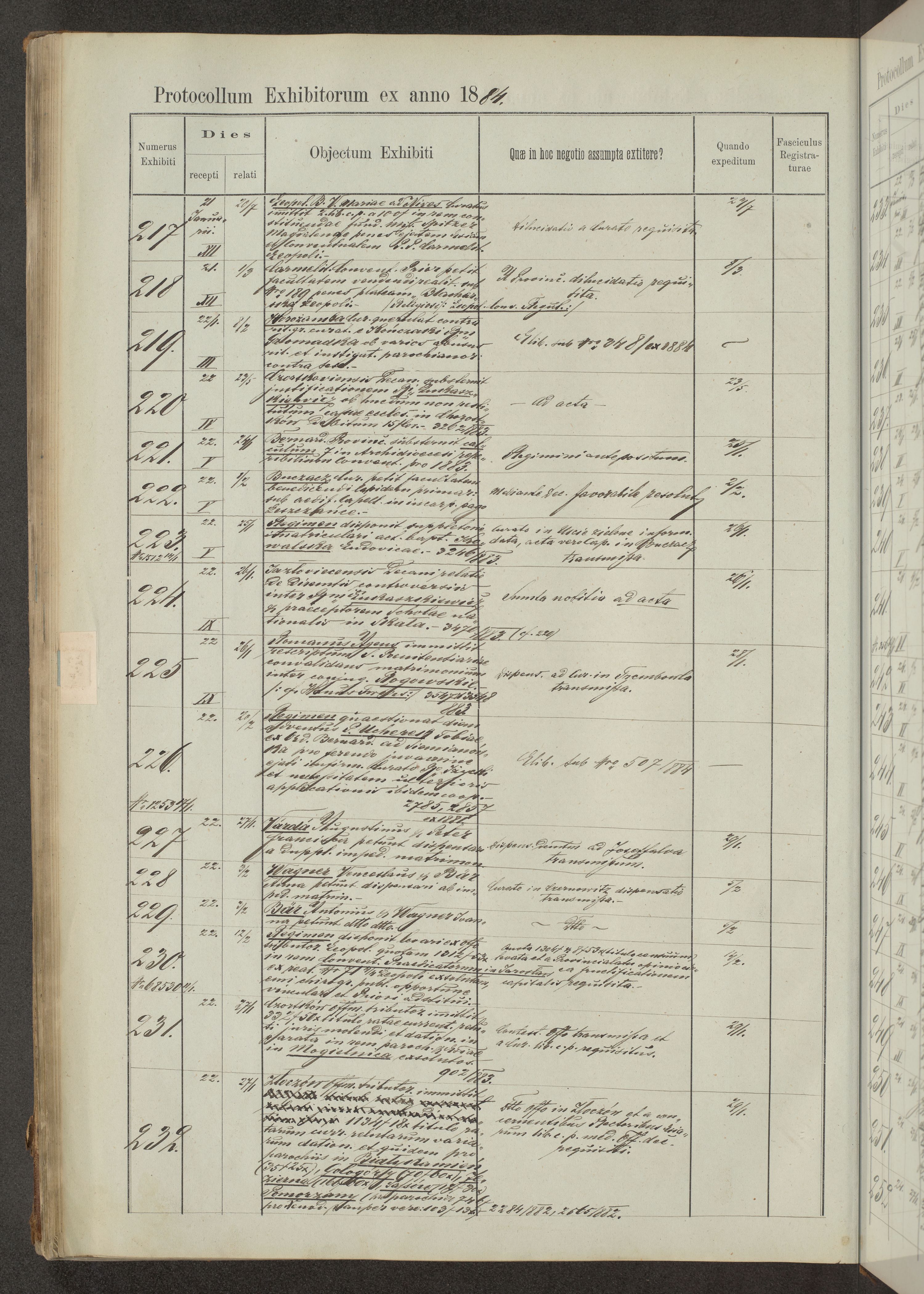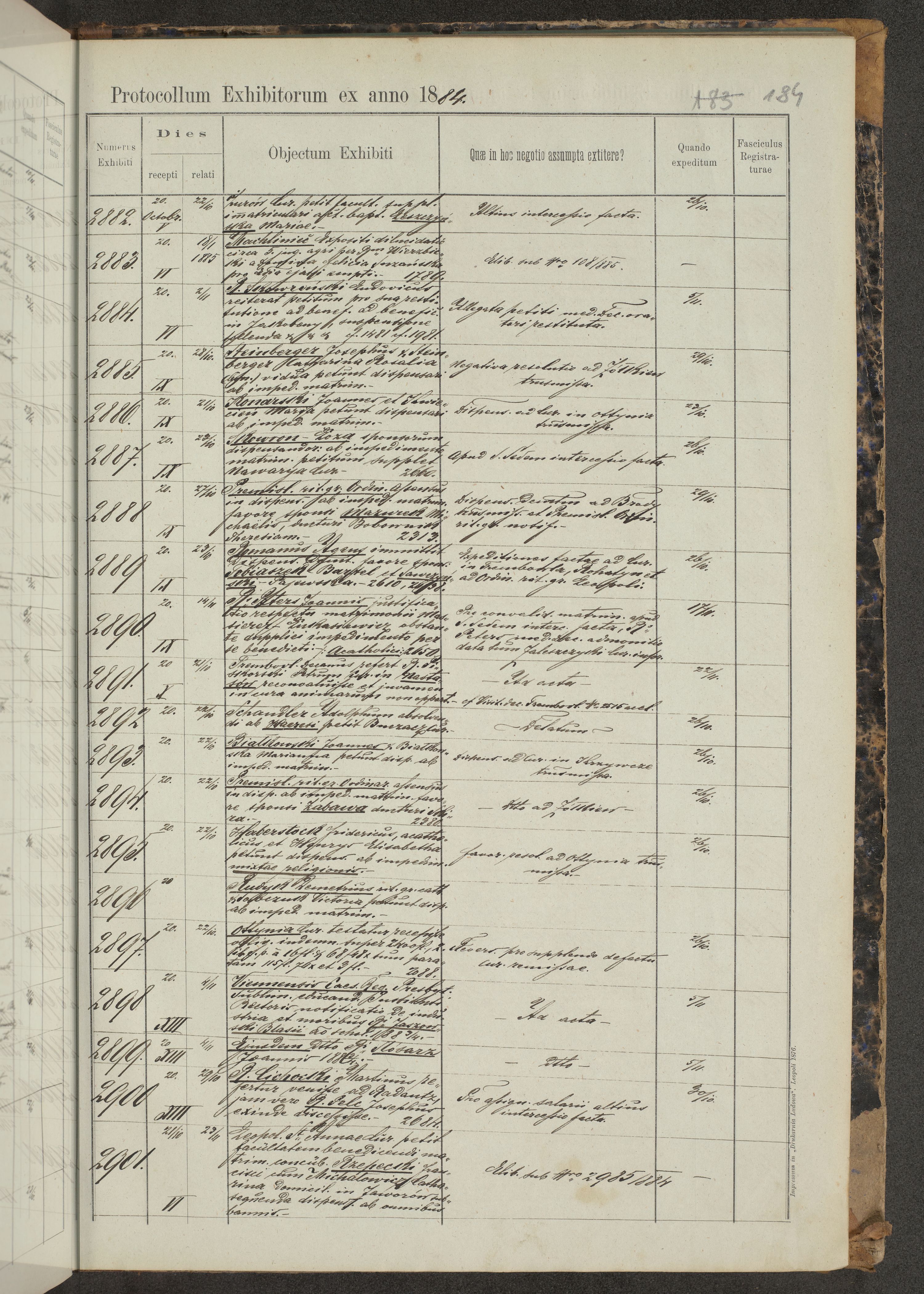 Protocollon exhibitorum in Ecclesiasticis ex anno 1883-1884