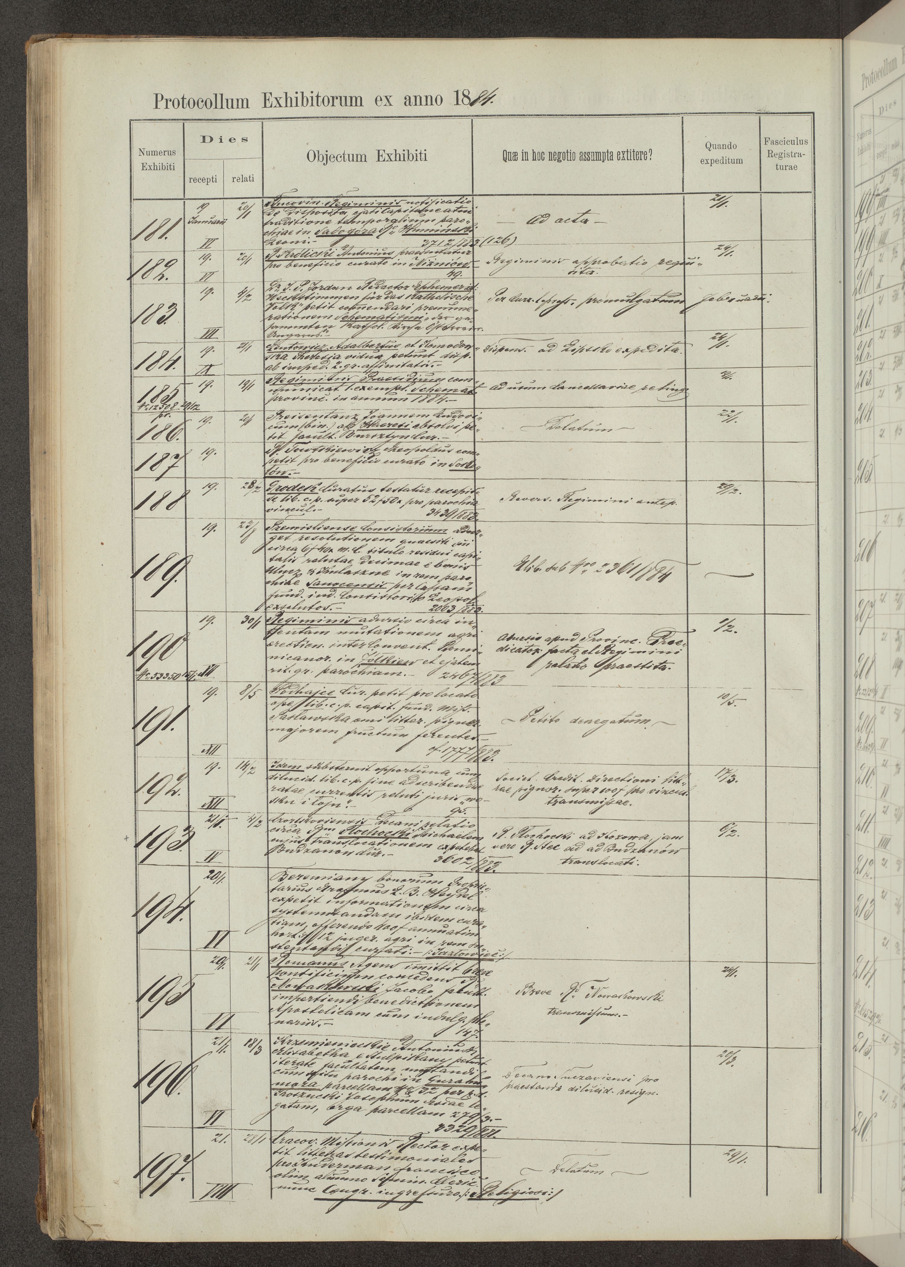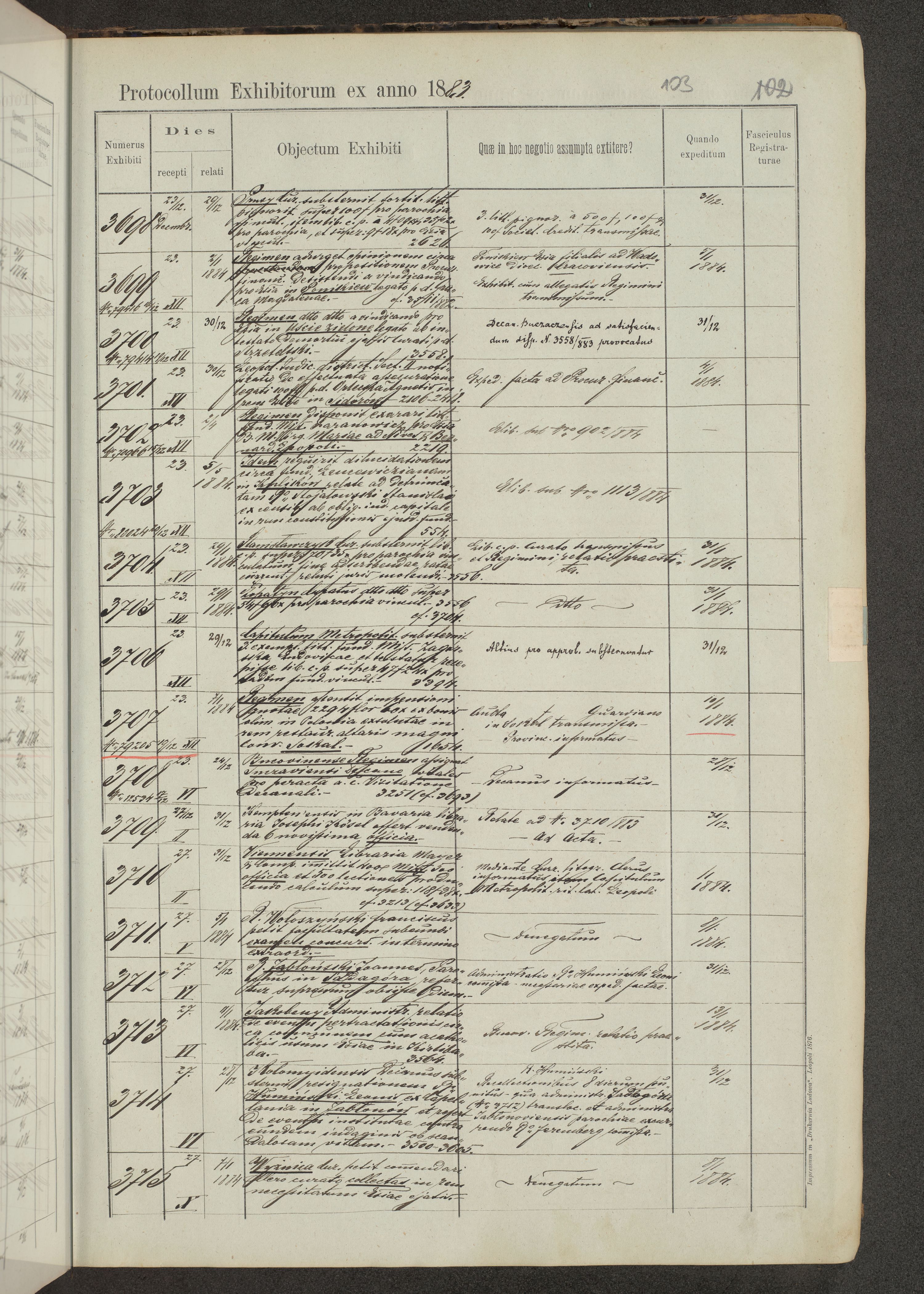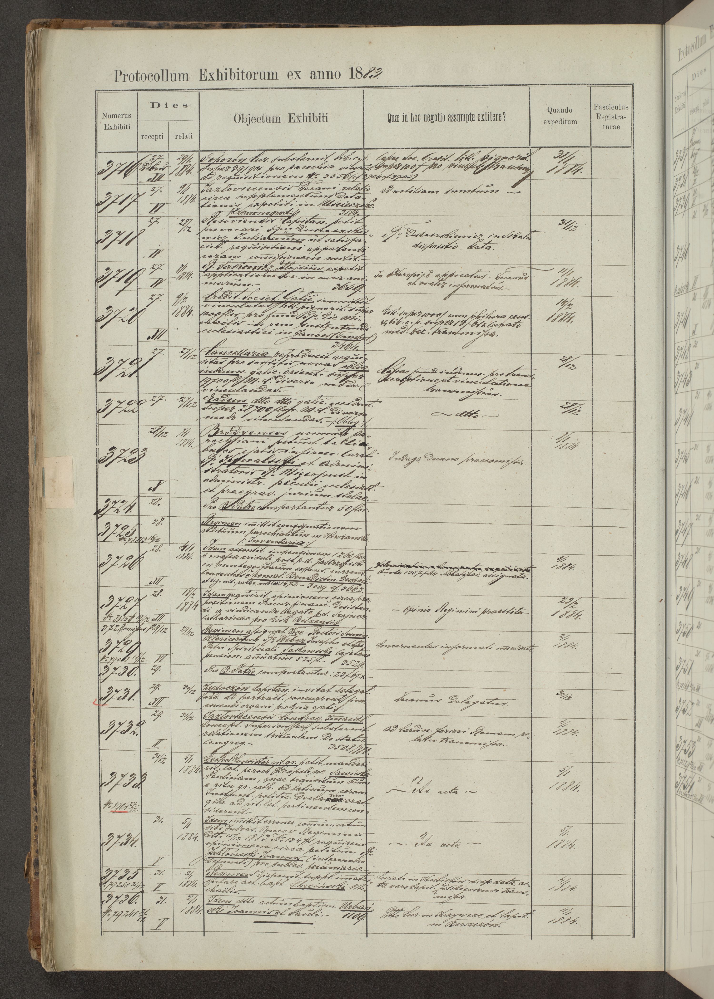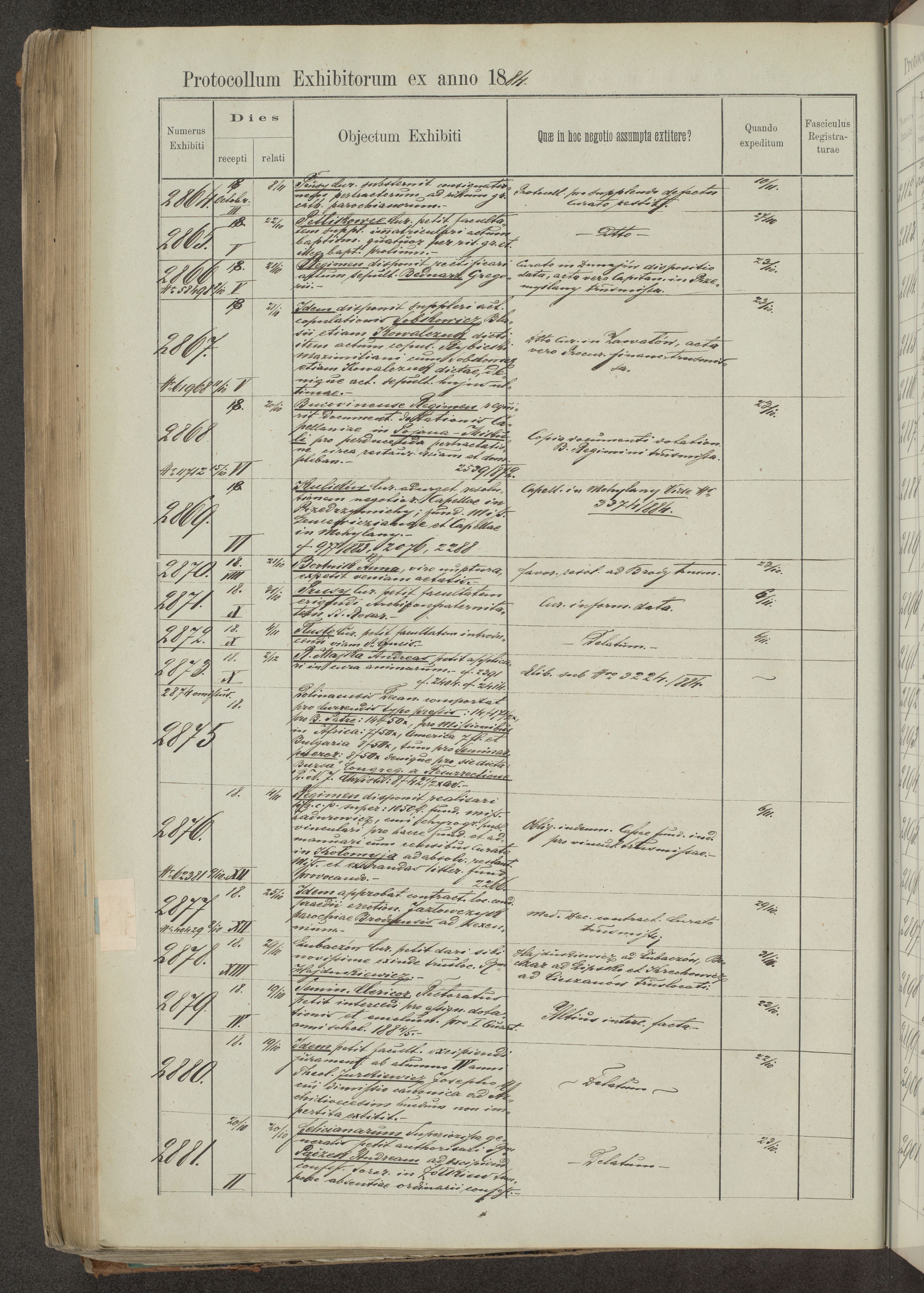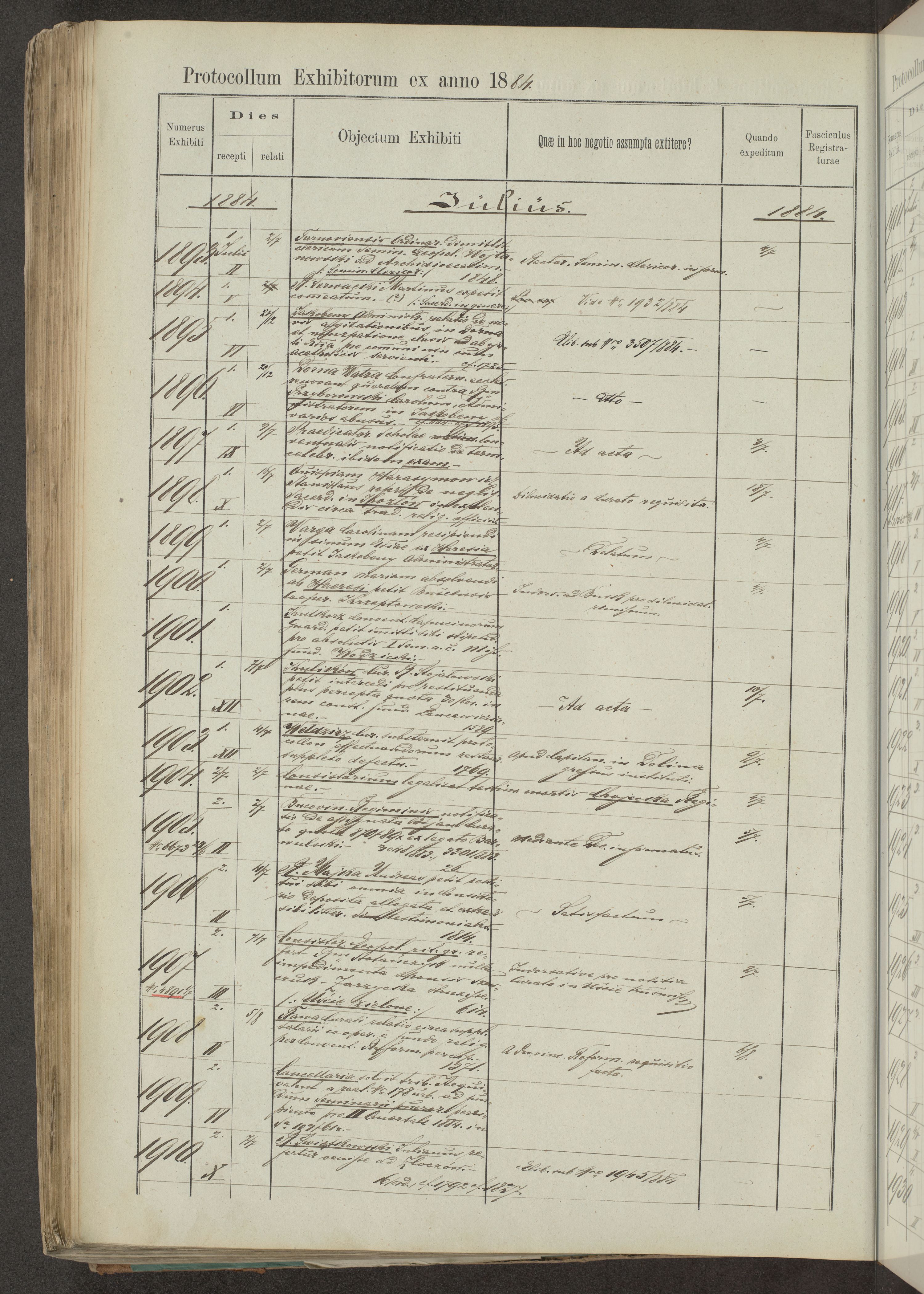 Protocollon exhibitorum in Ecclesiasticis ex anno 1883-1884