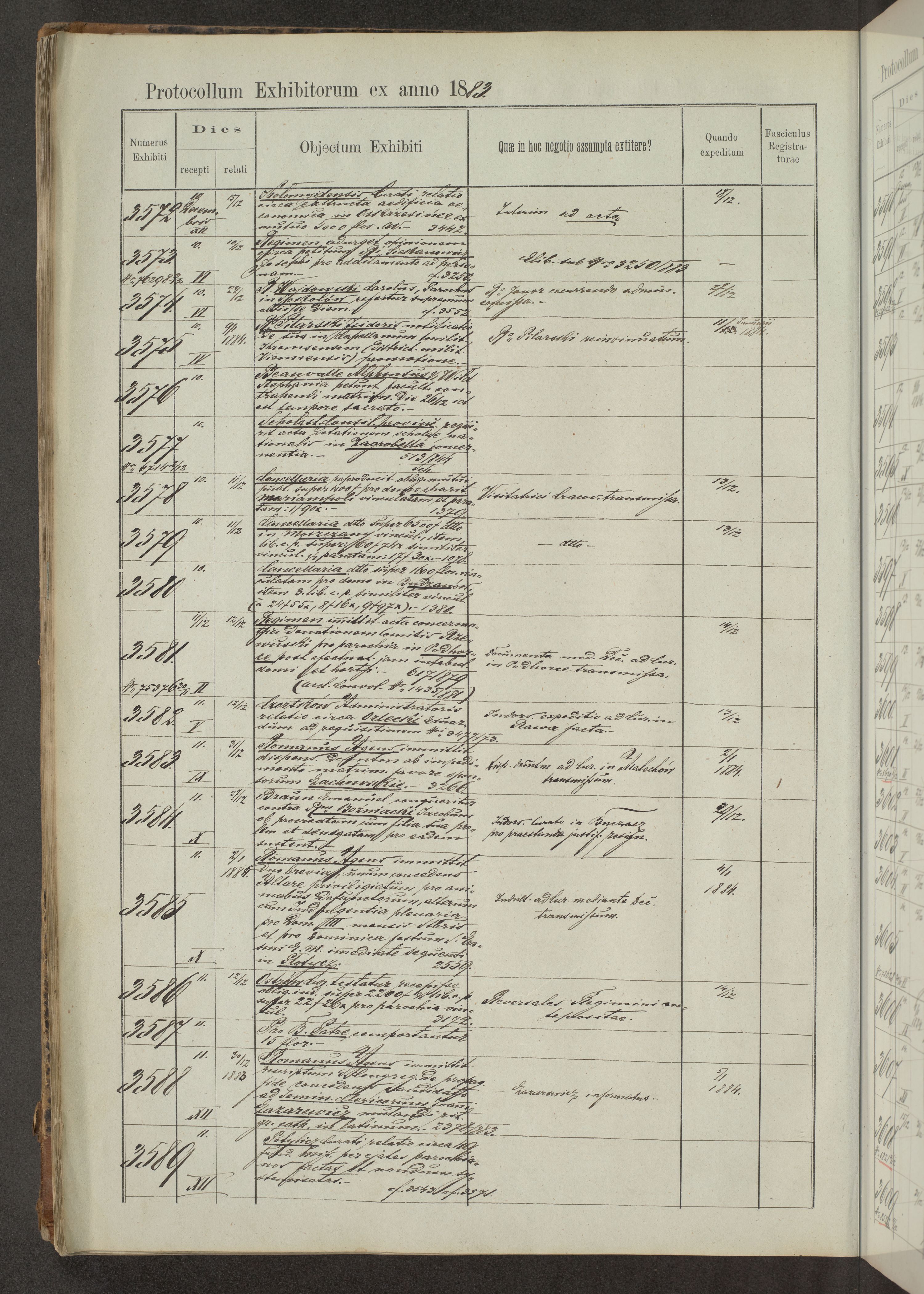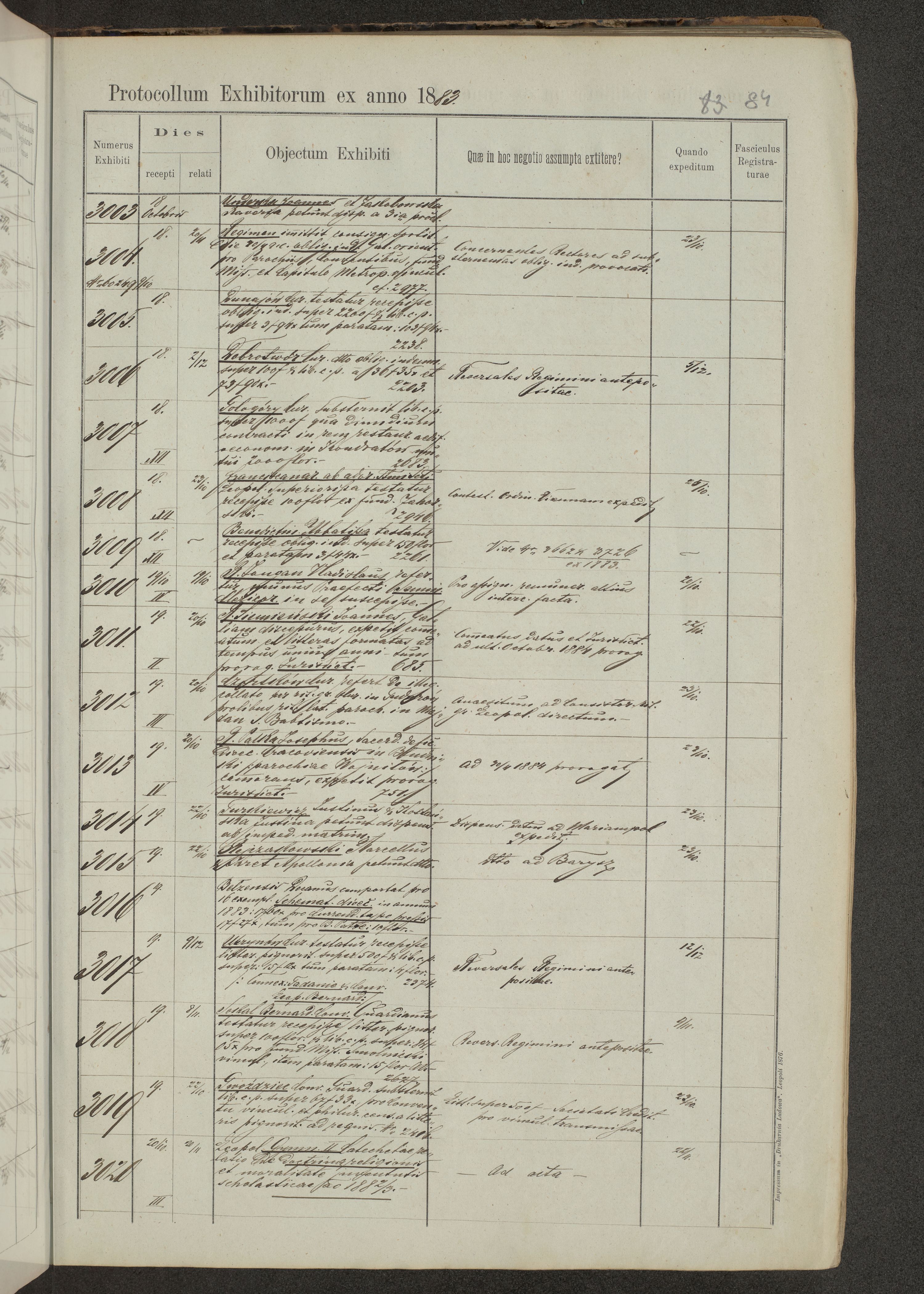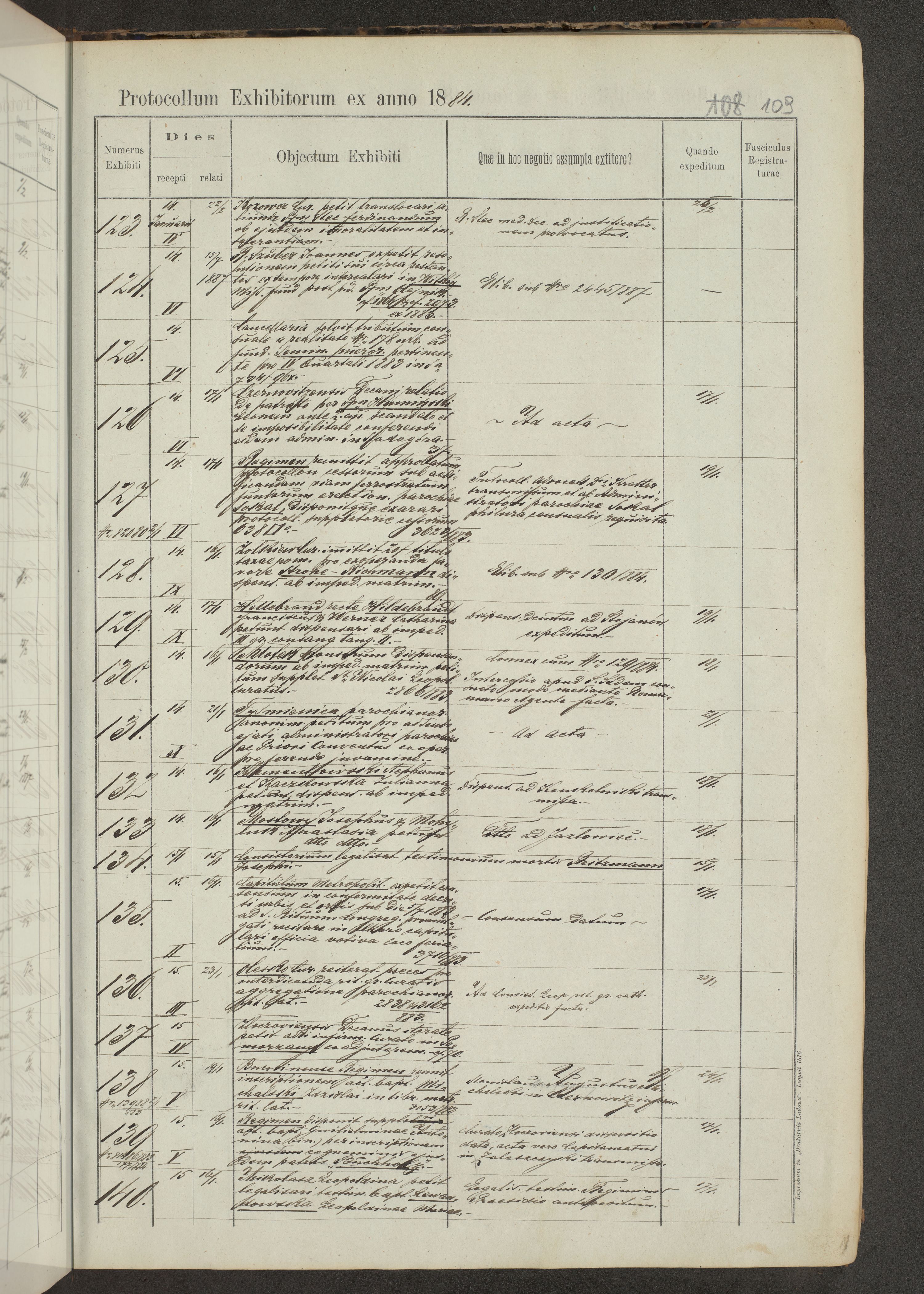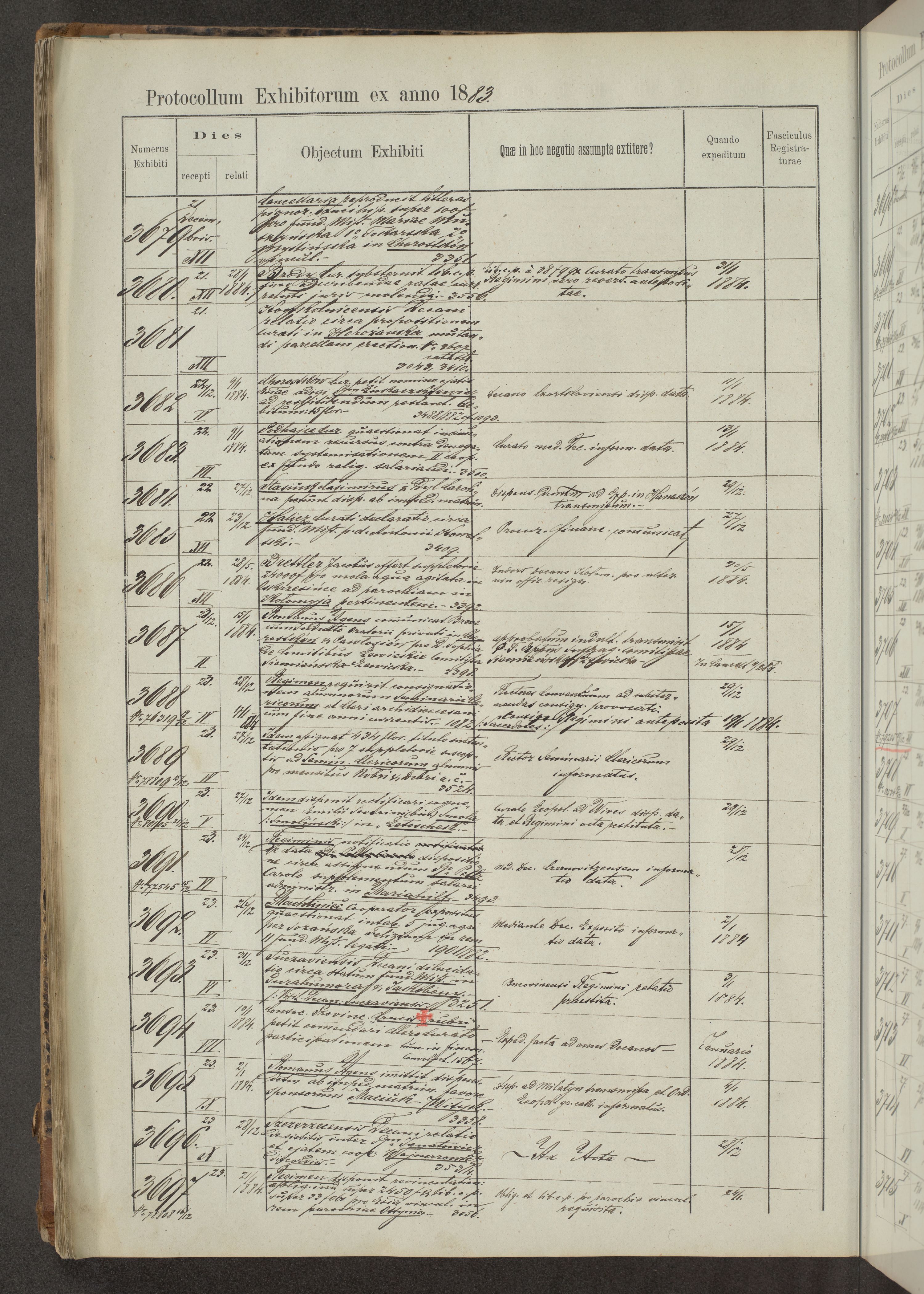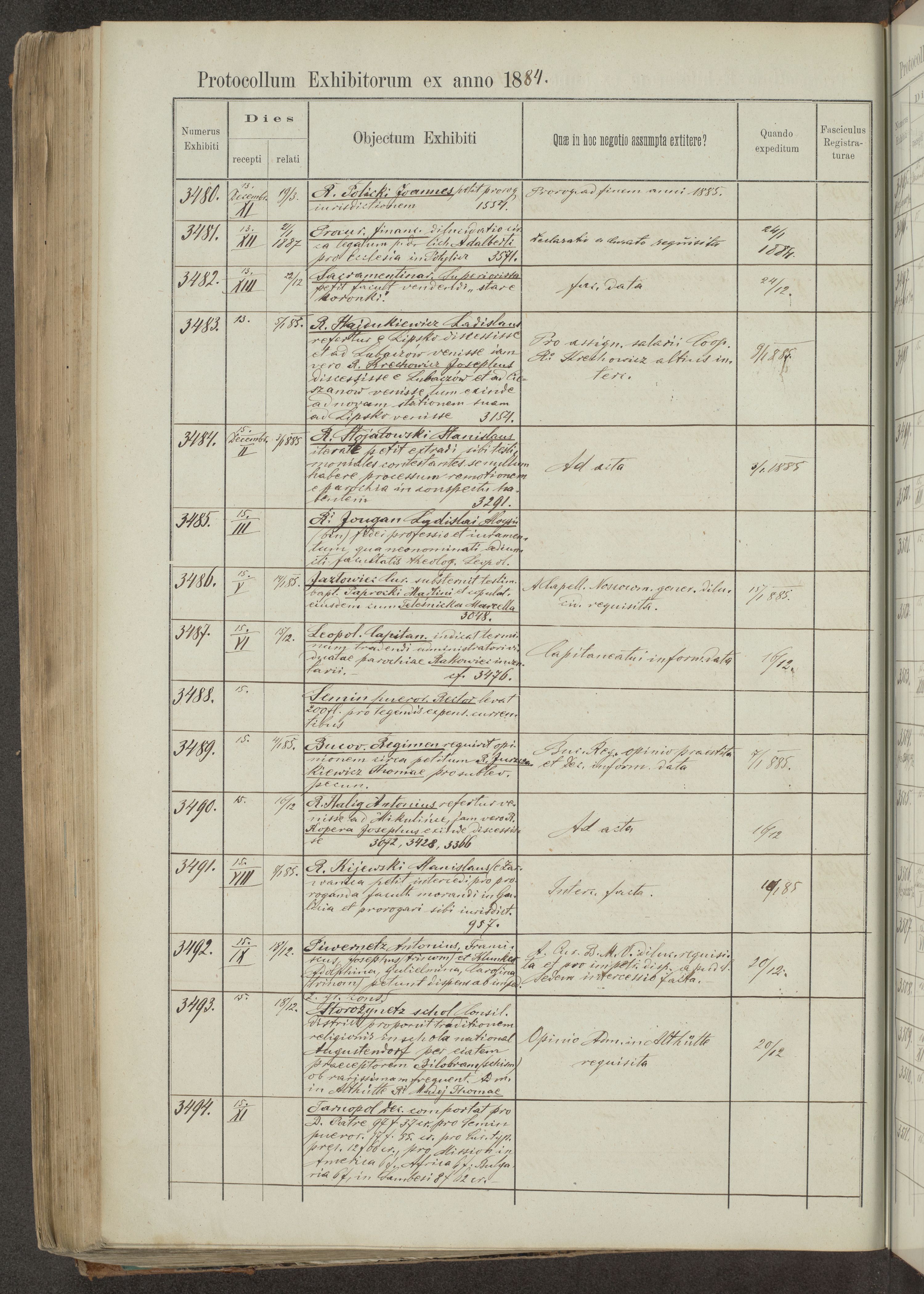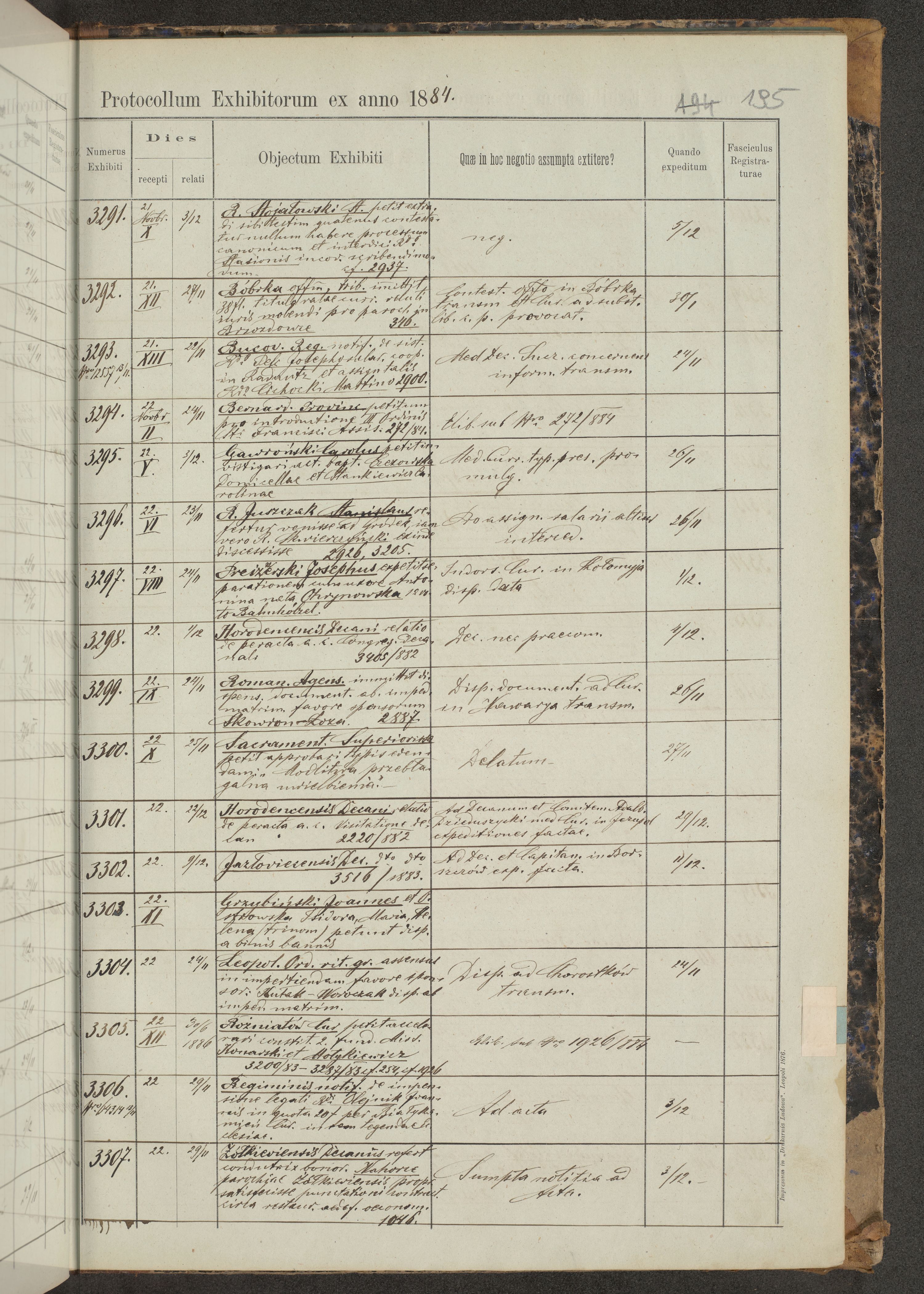 Protocollon exhibitorum in Ecclesiasticis ex anno 1883-1884