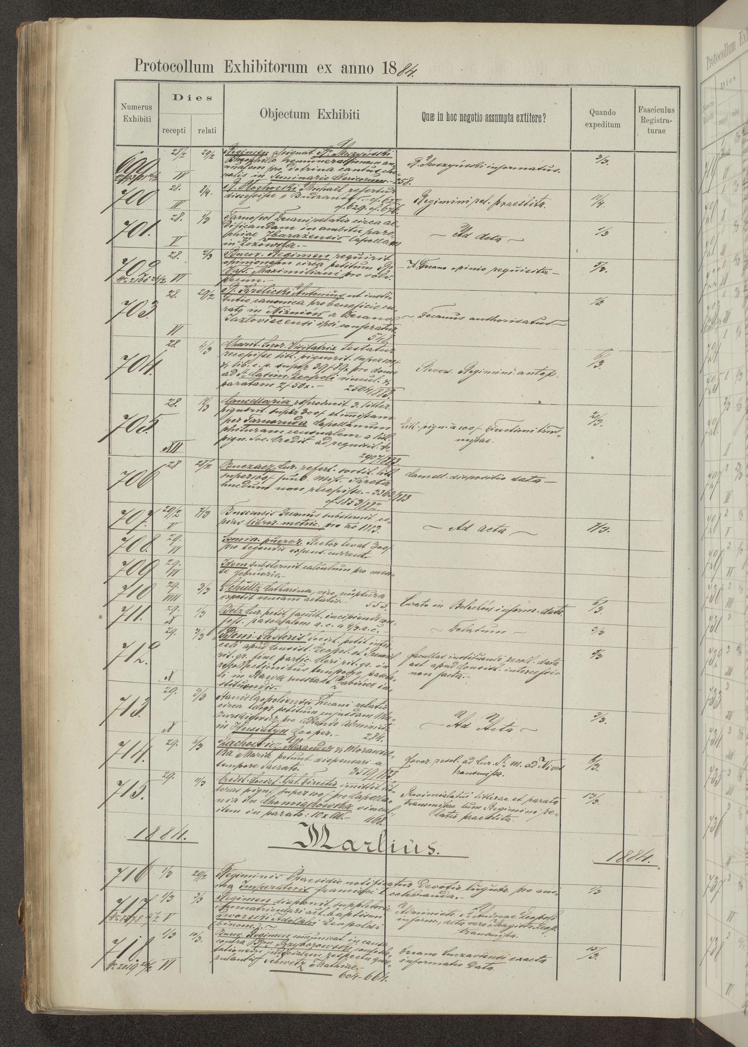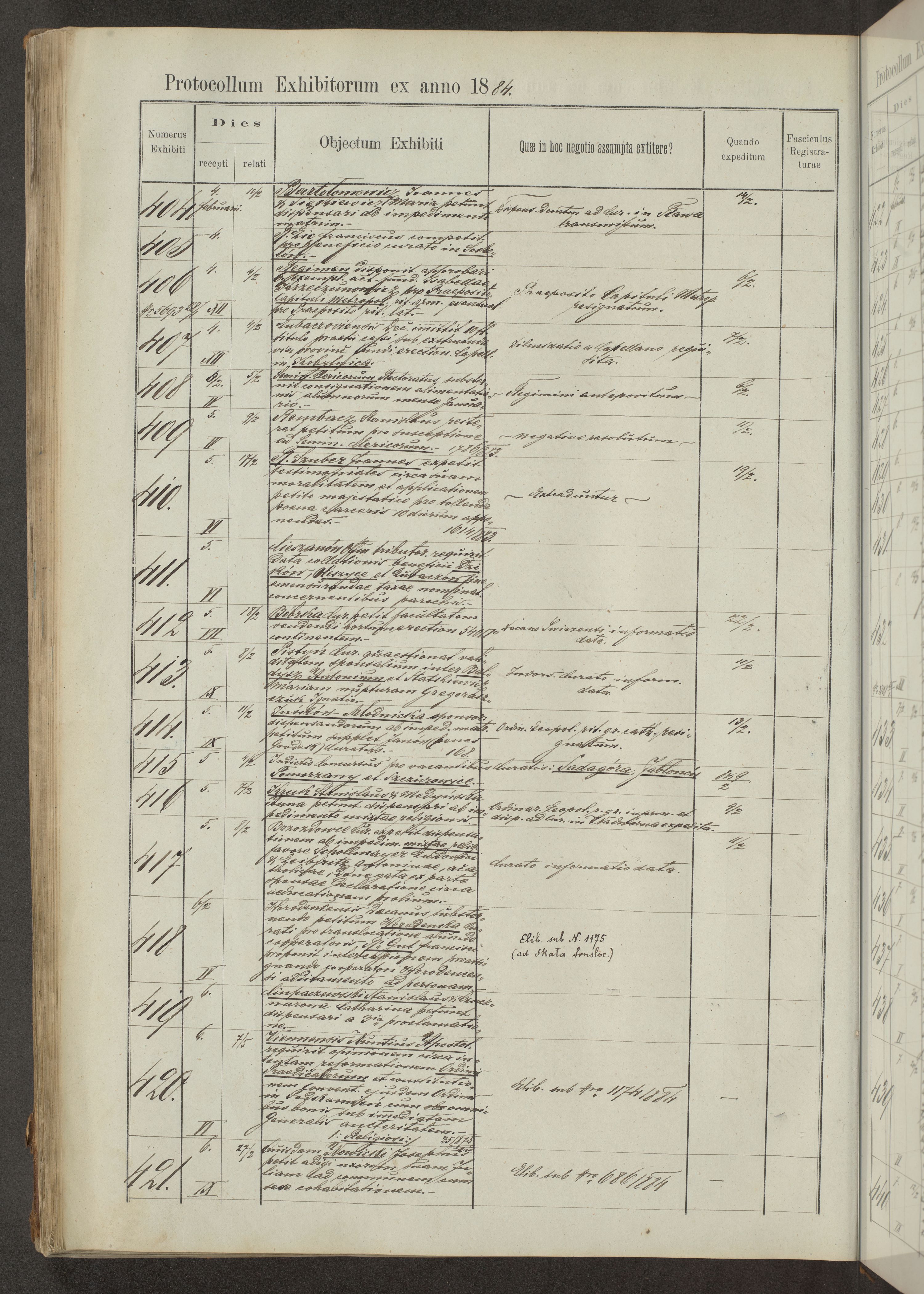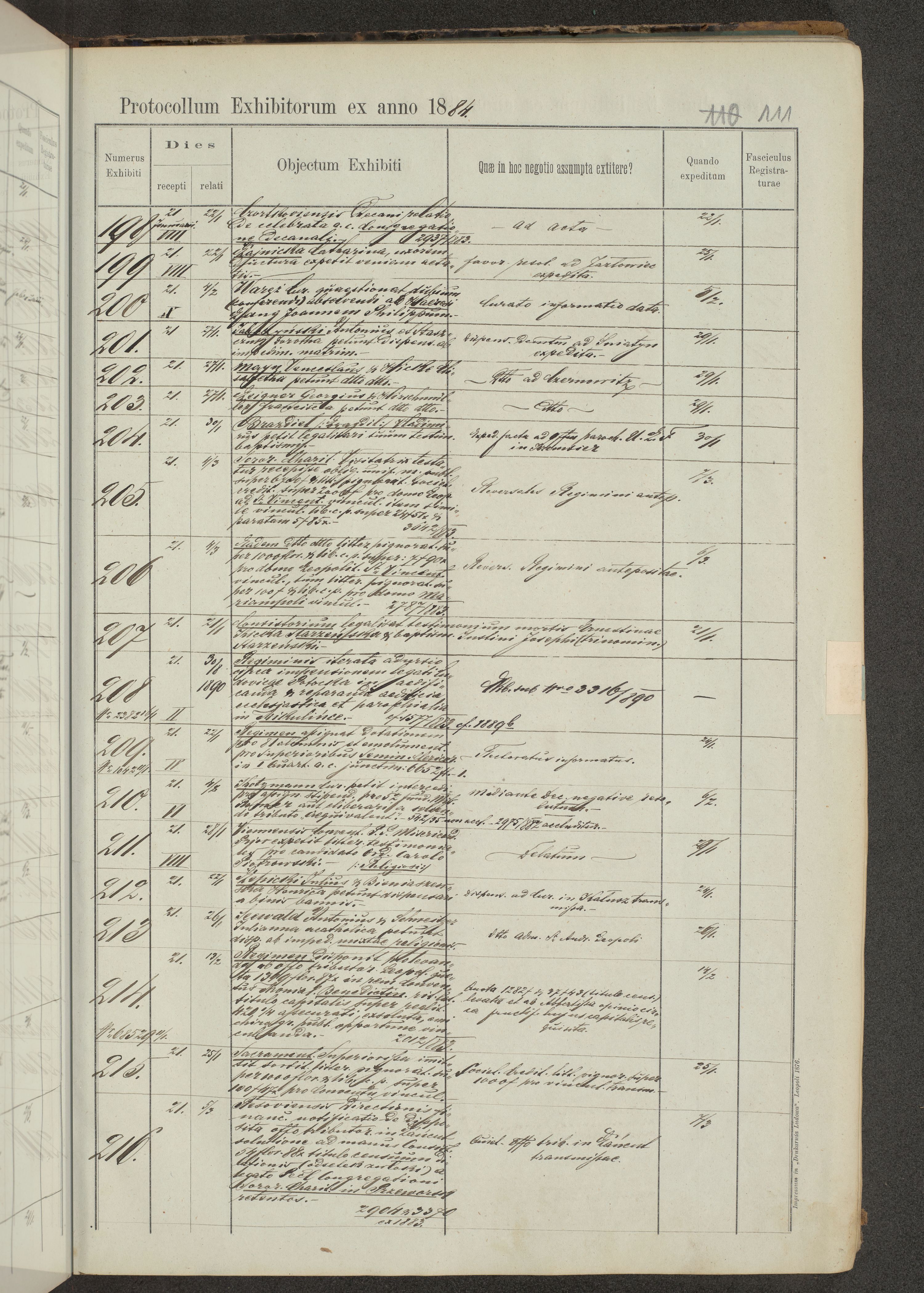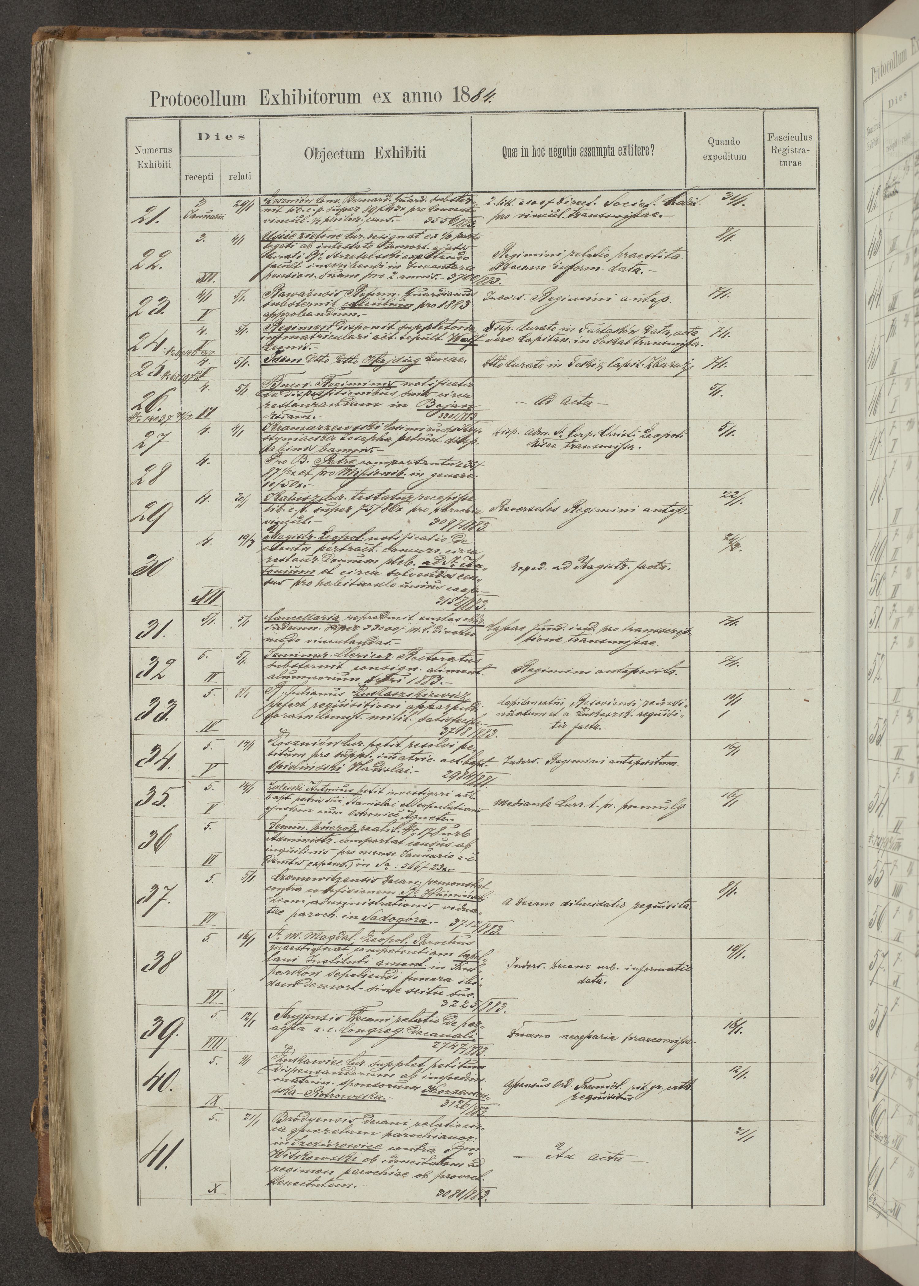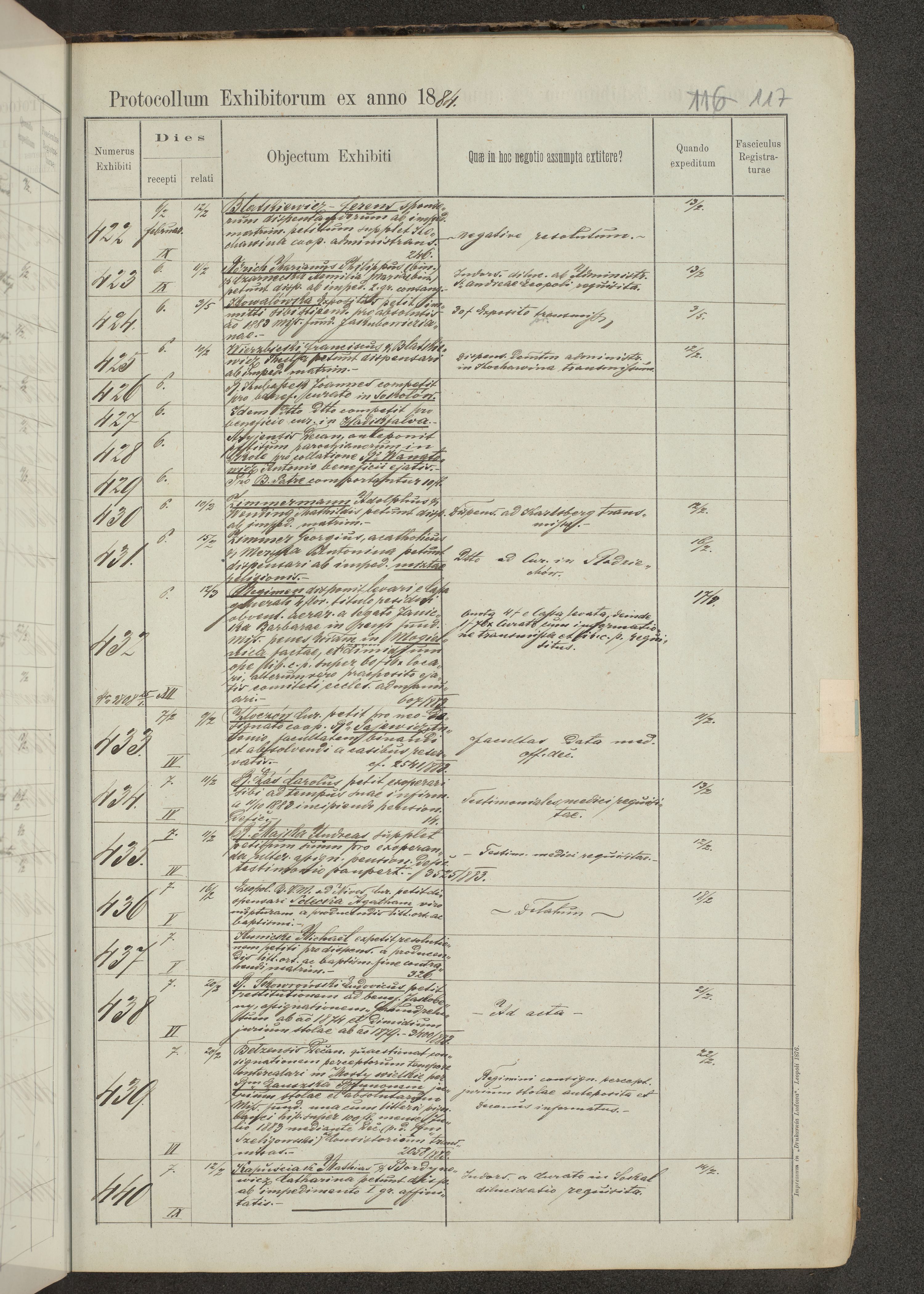 Protocollon exhibitorum in Ecclesiasticis ex anno 1883-1884