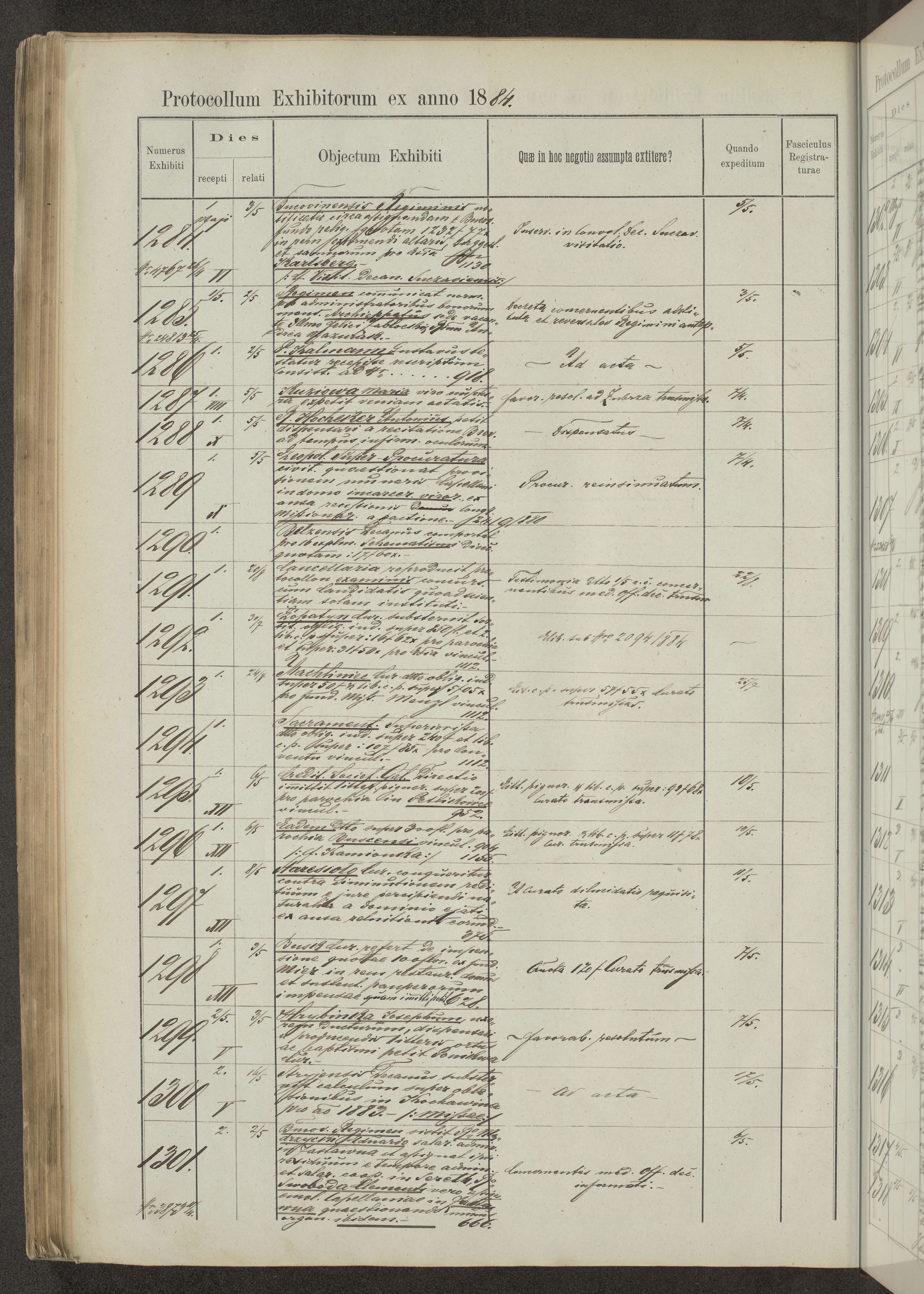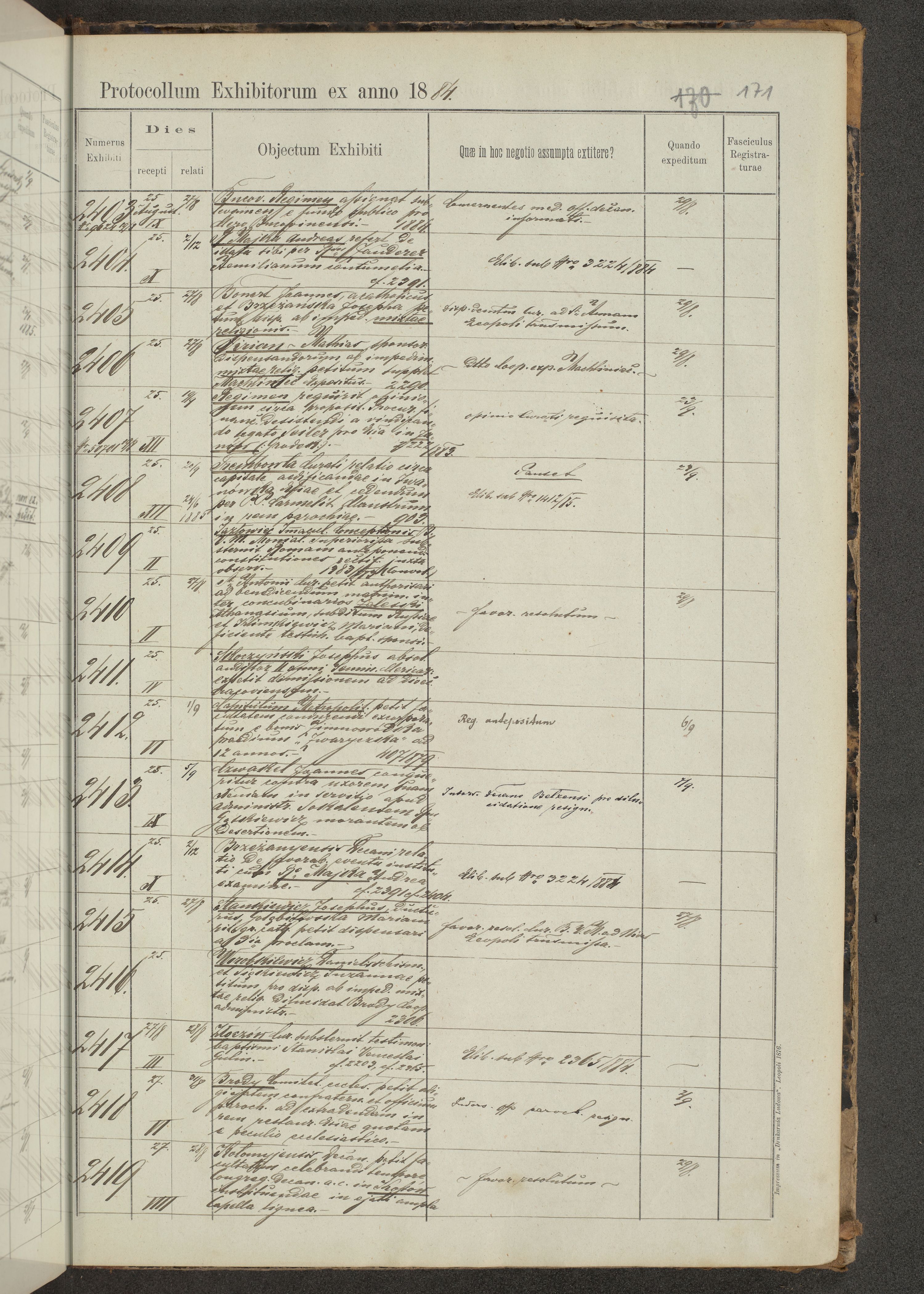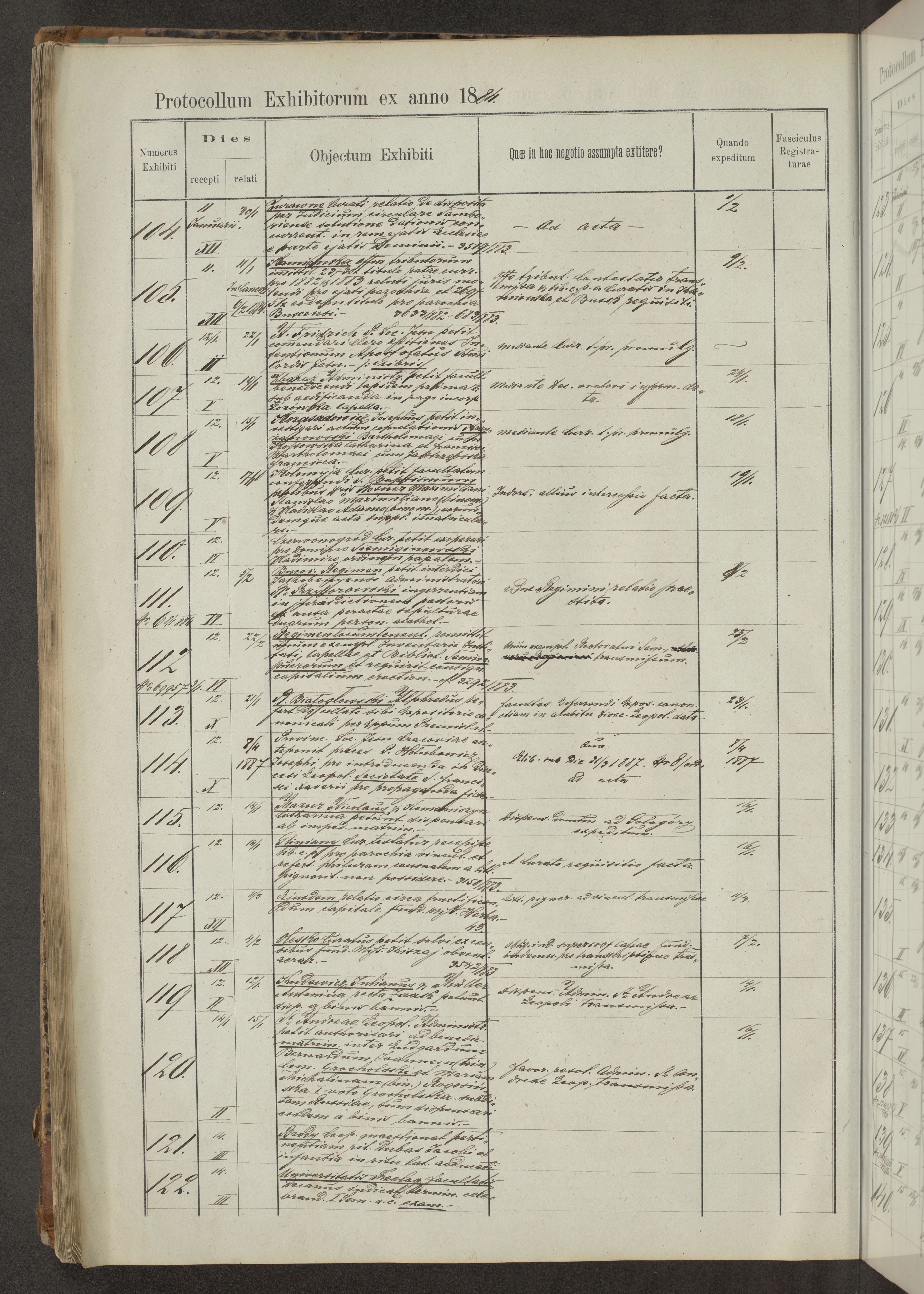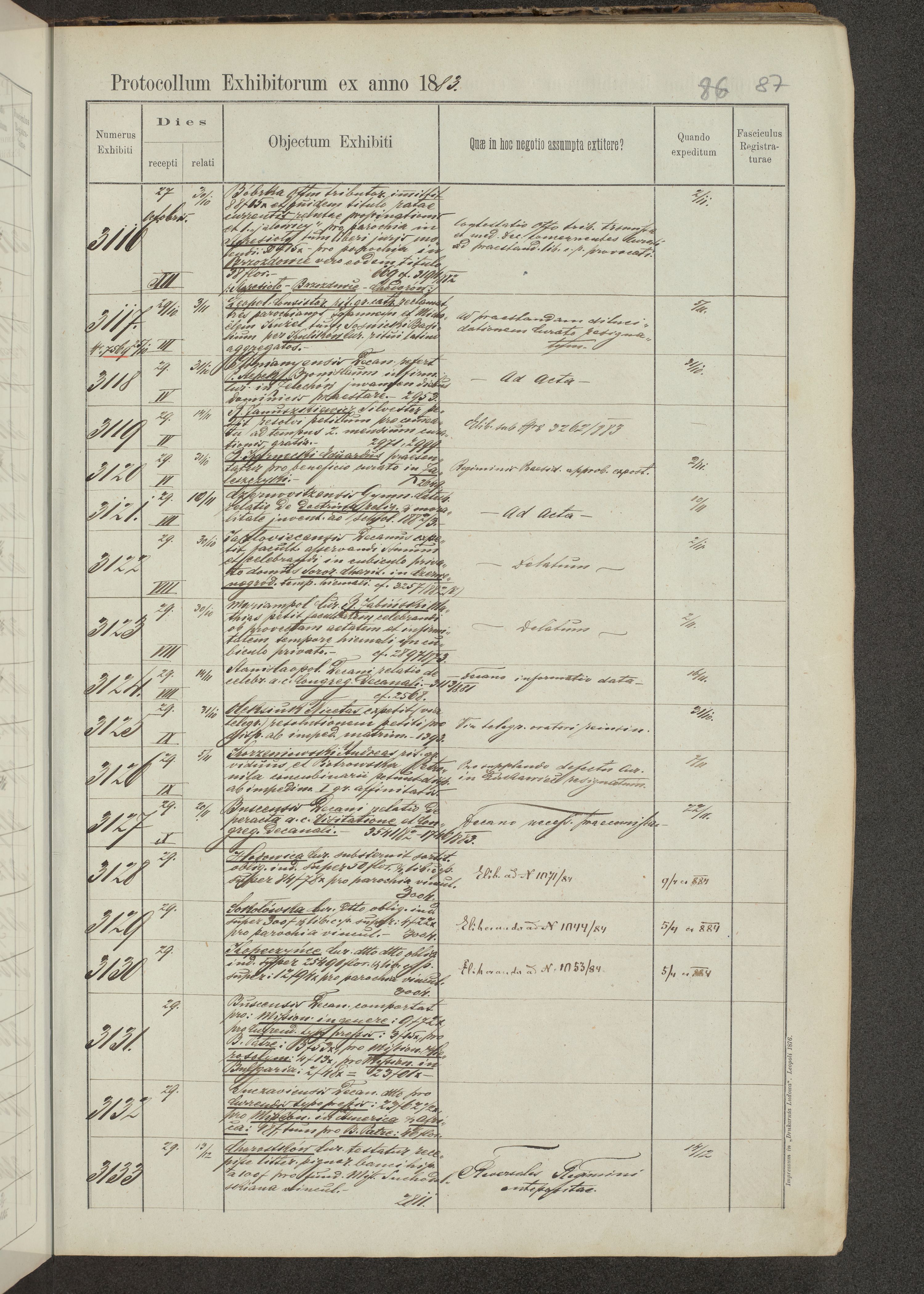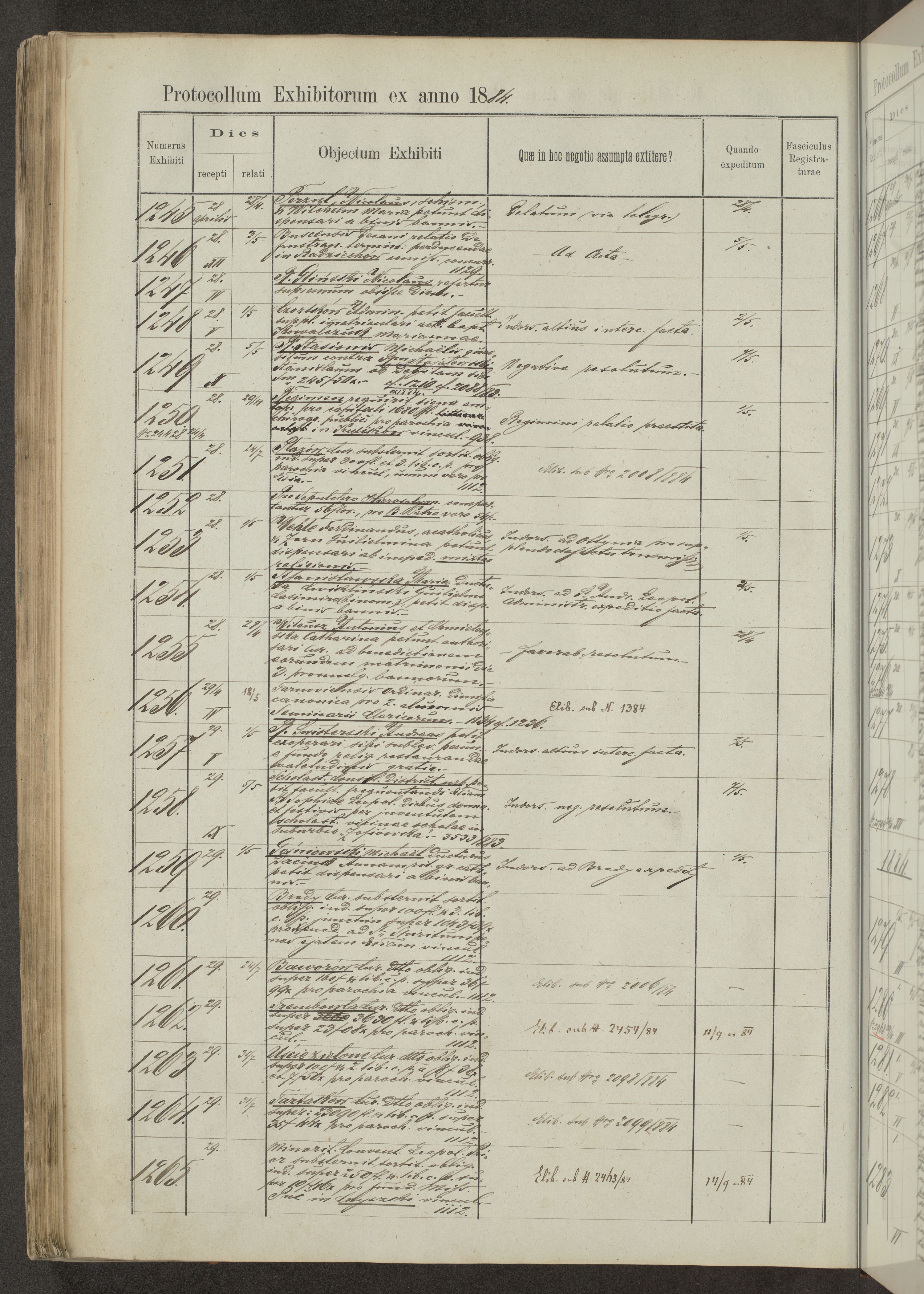 Protocollon exhibitorum in Ecclesiasticis ex anno 1883-1884