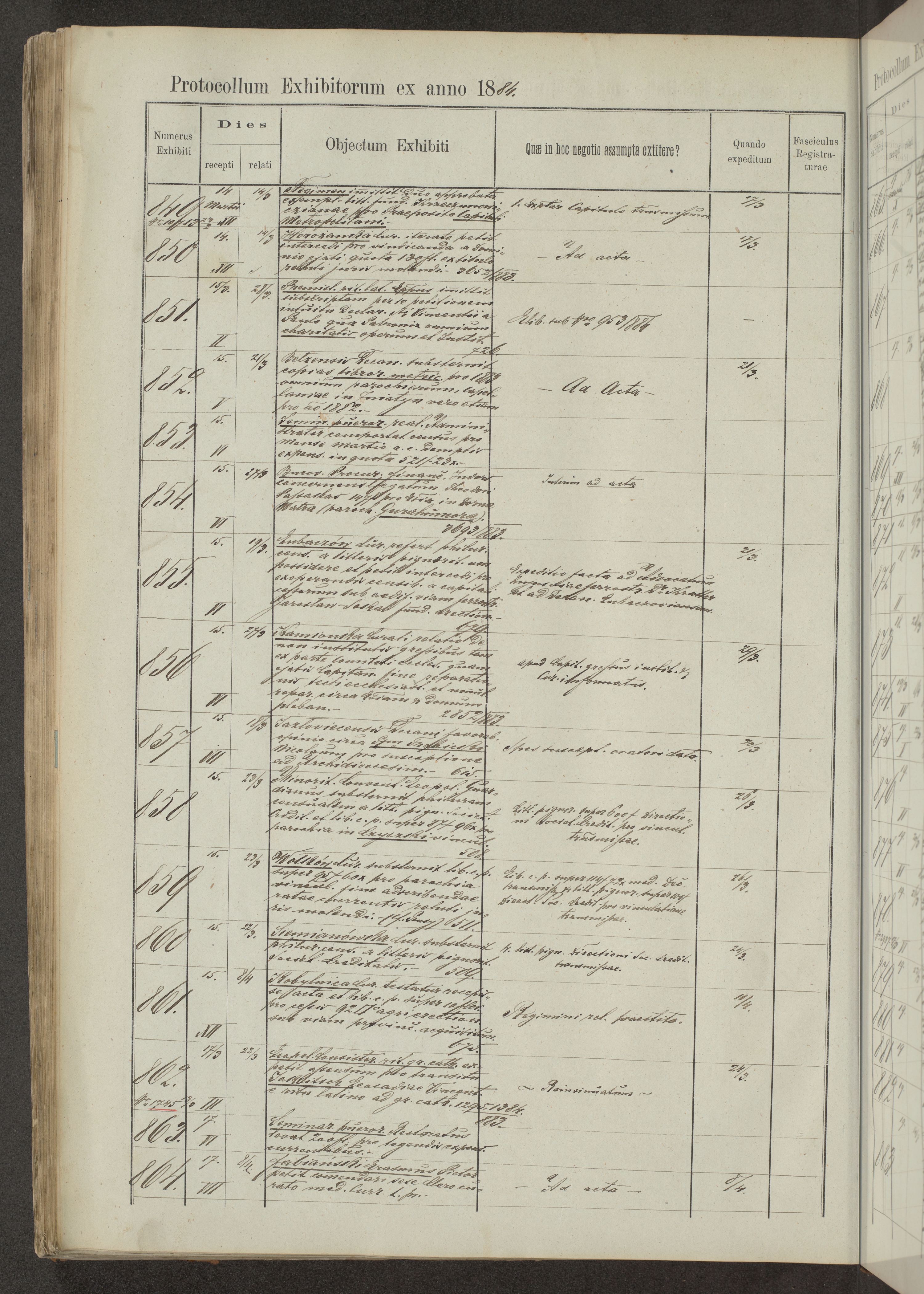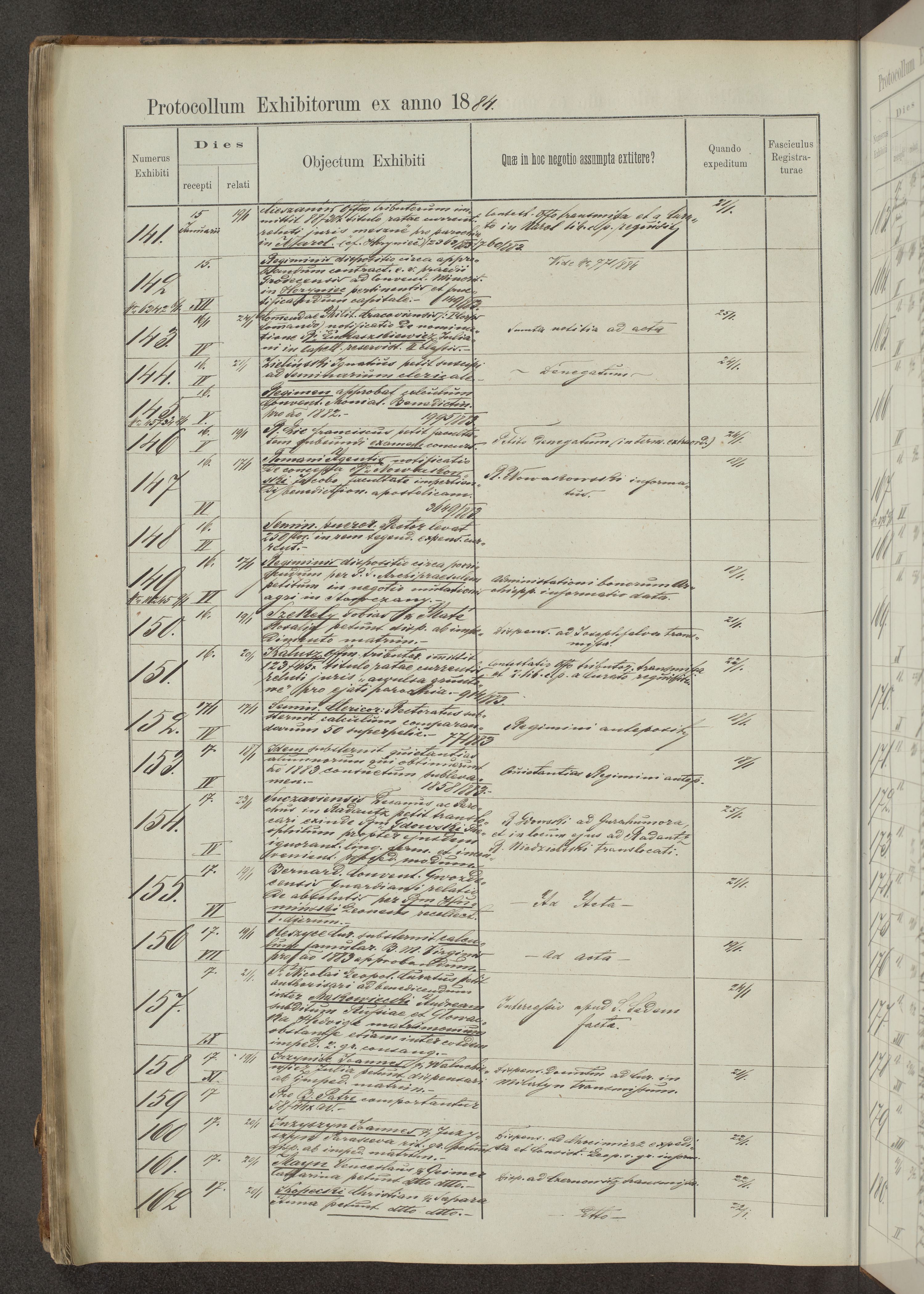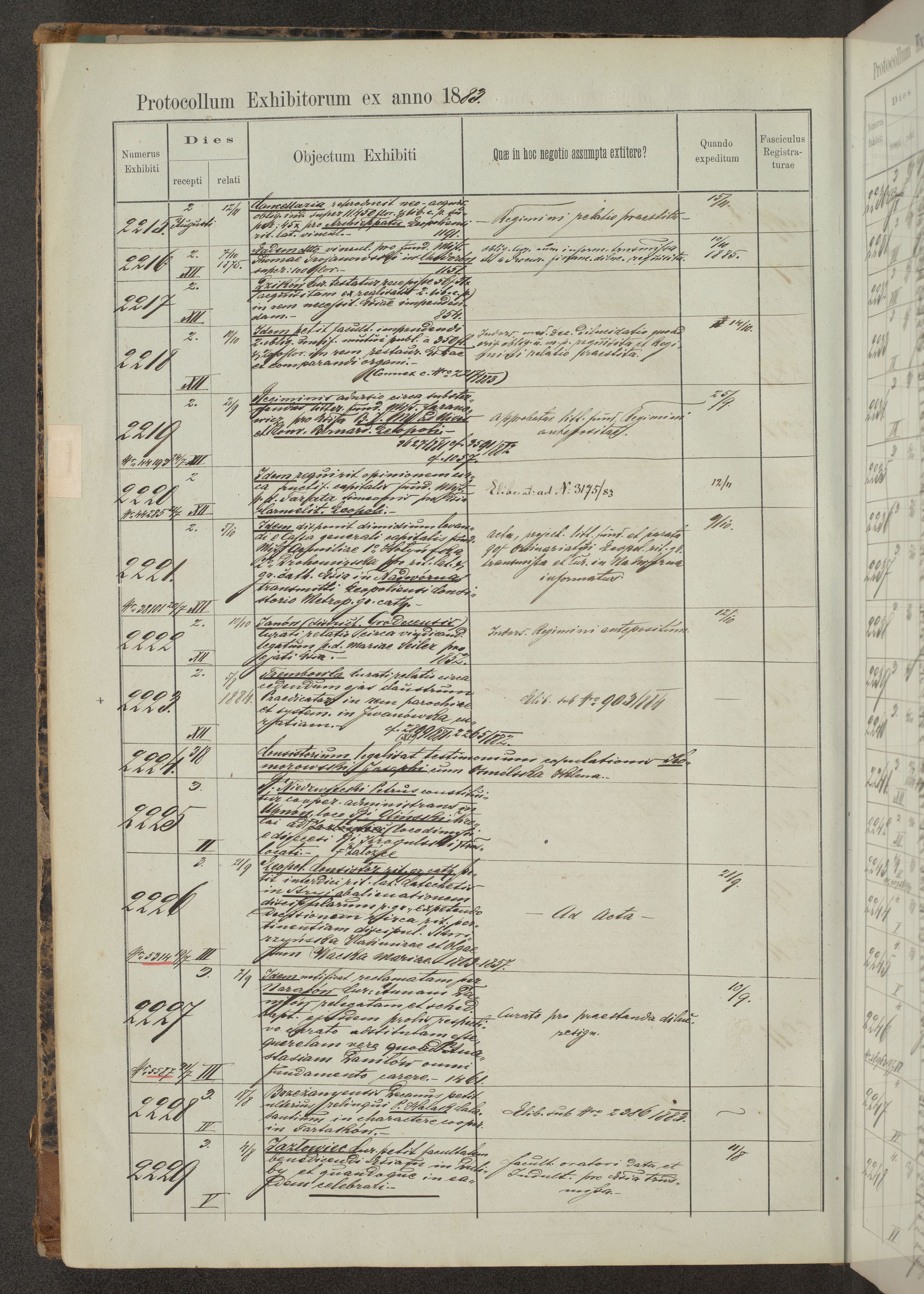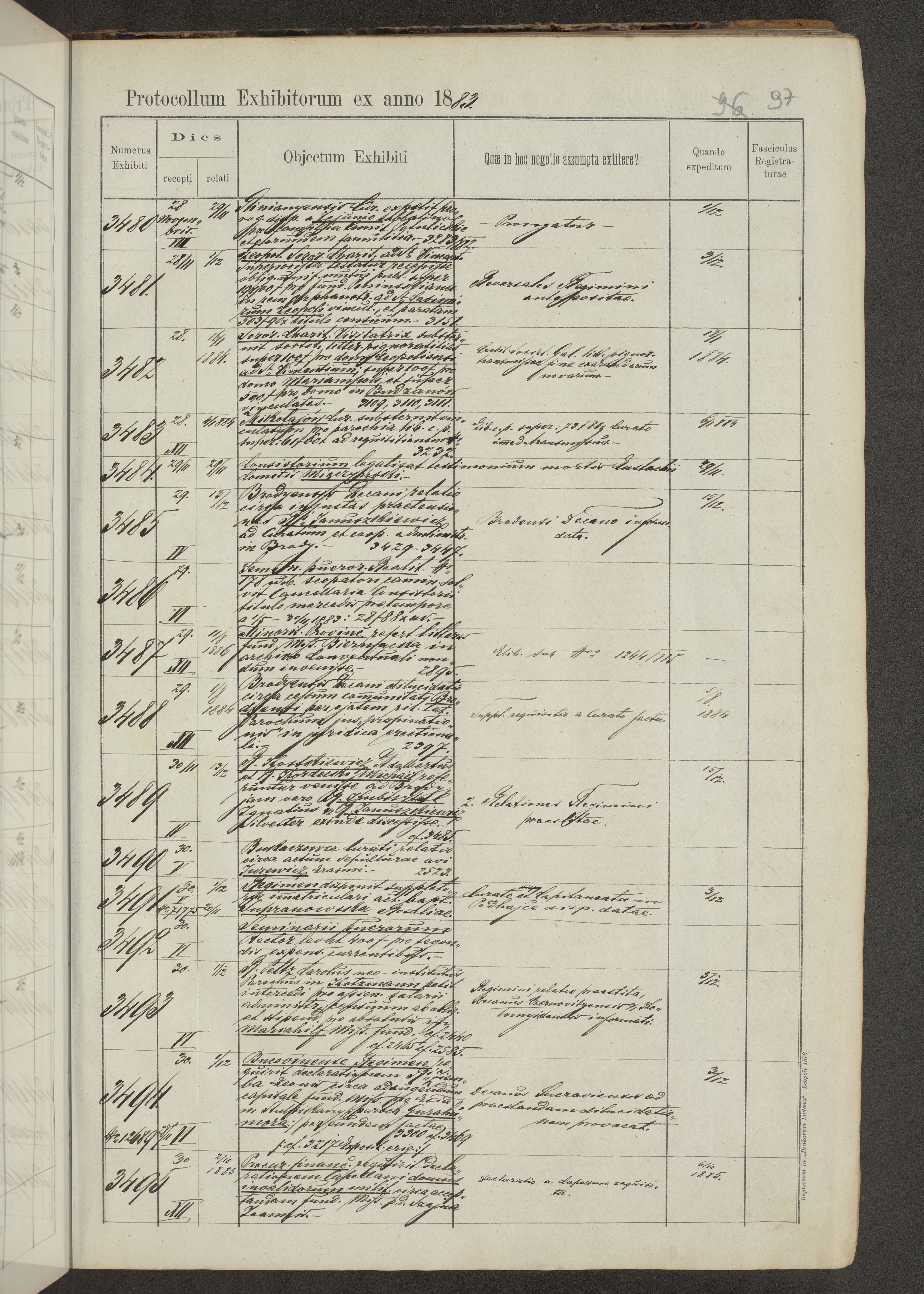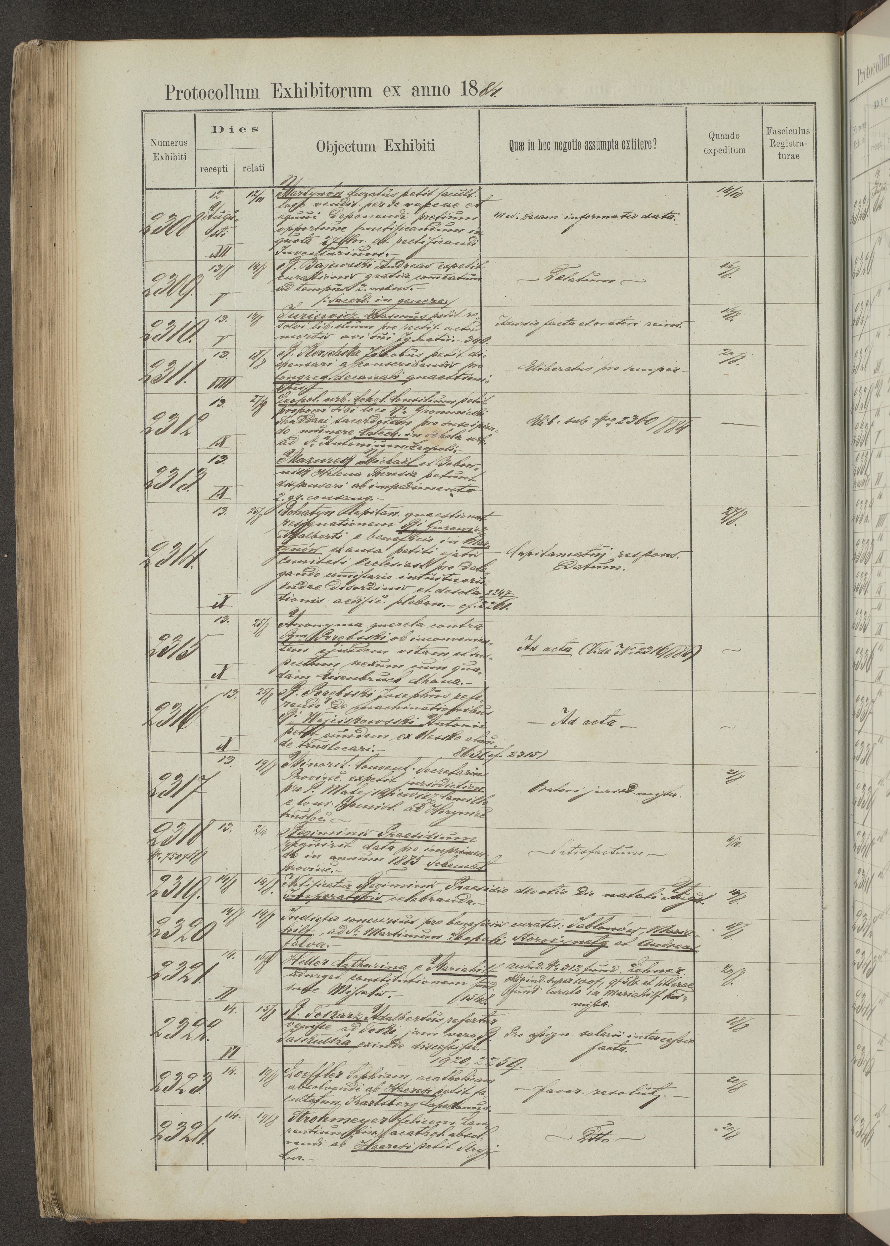 Protocollon exhibitorum in Ecclesiasticis ex anno 1883-1884