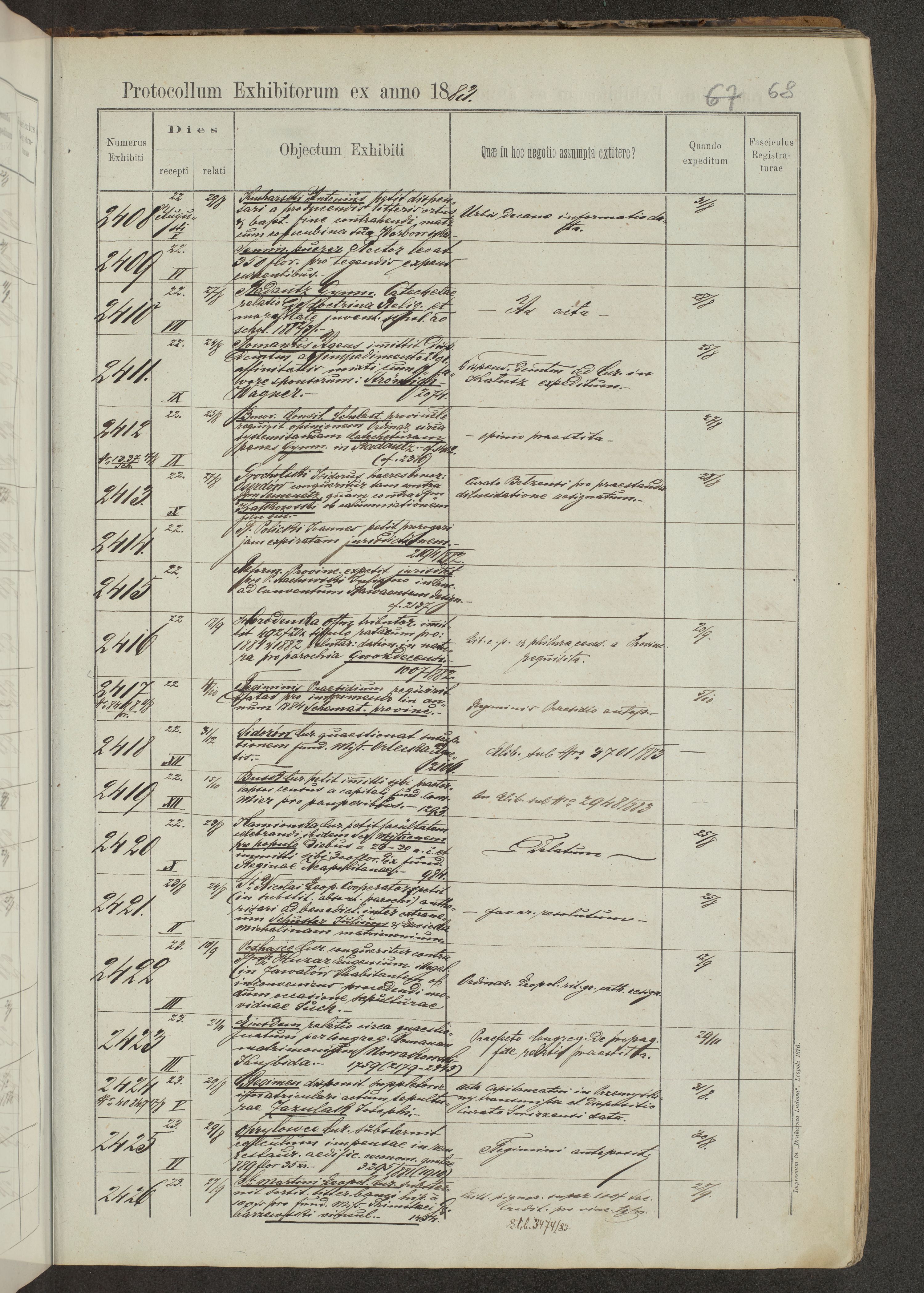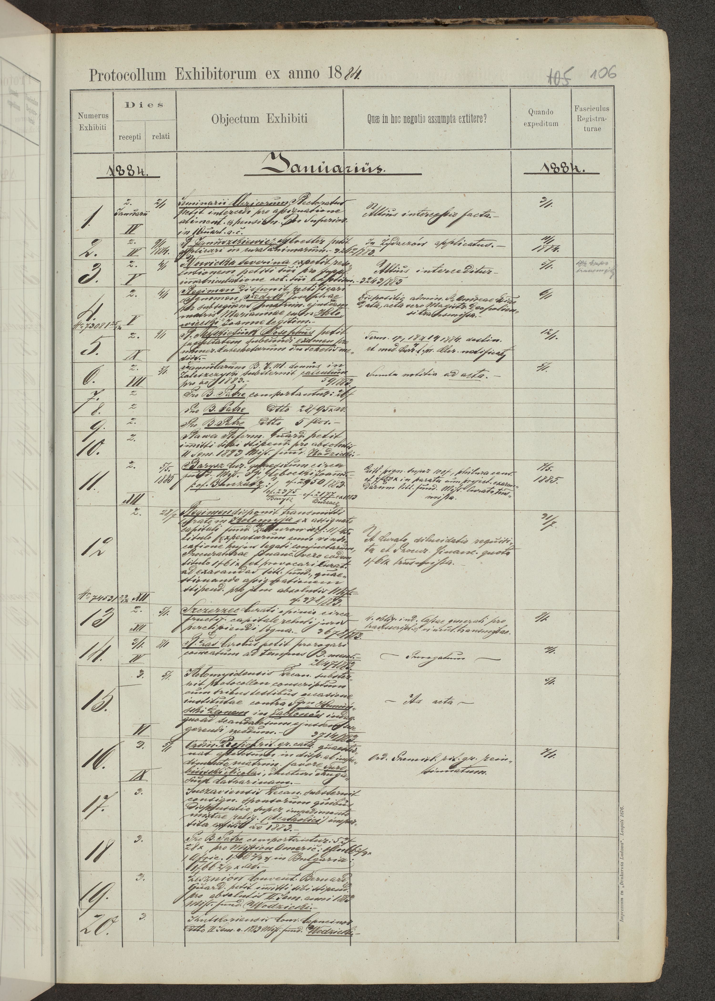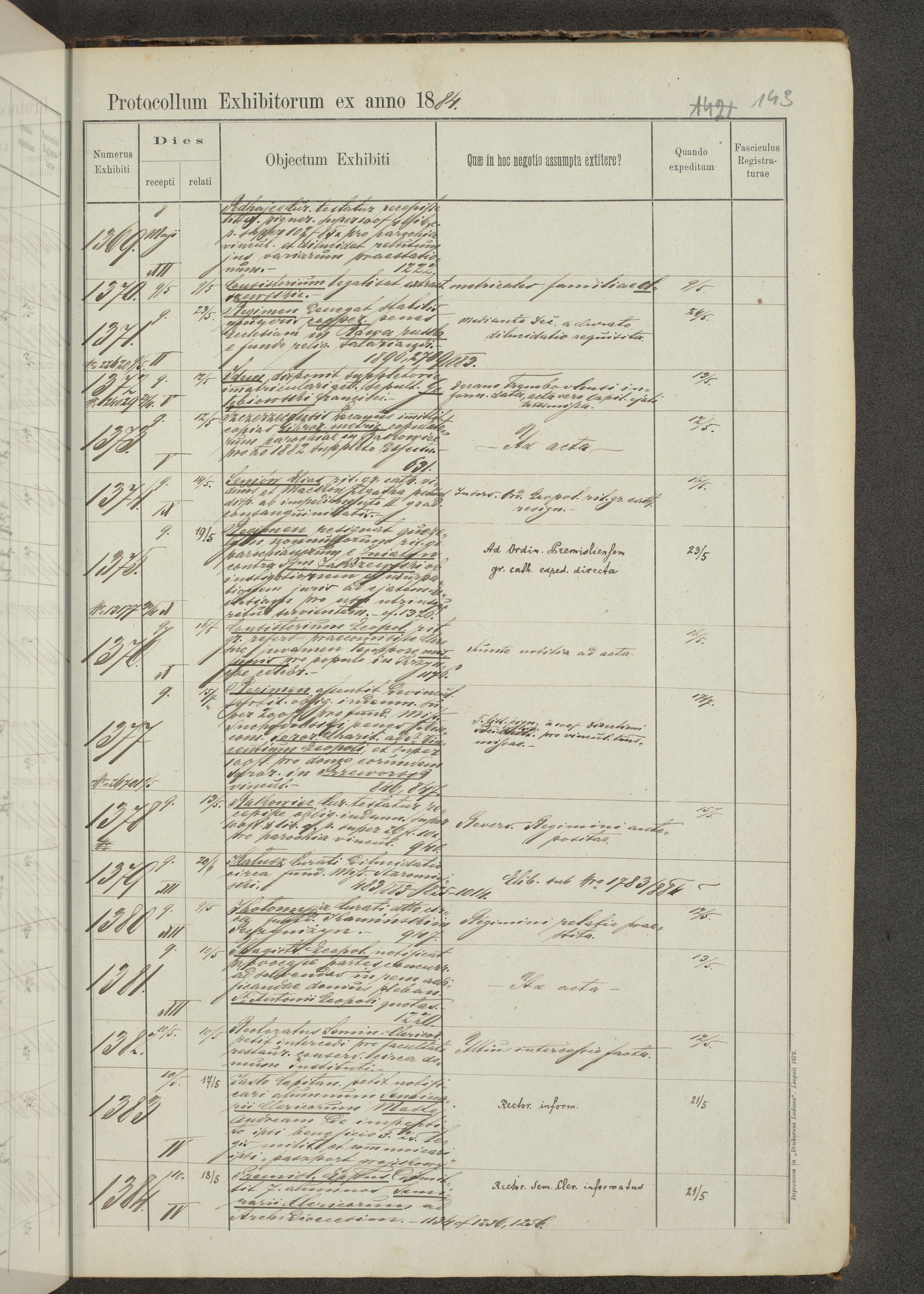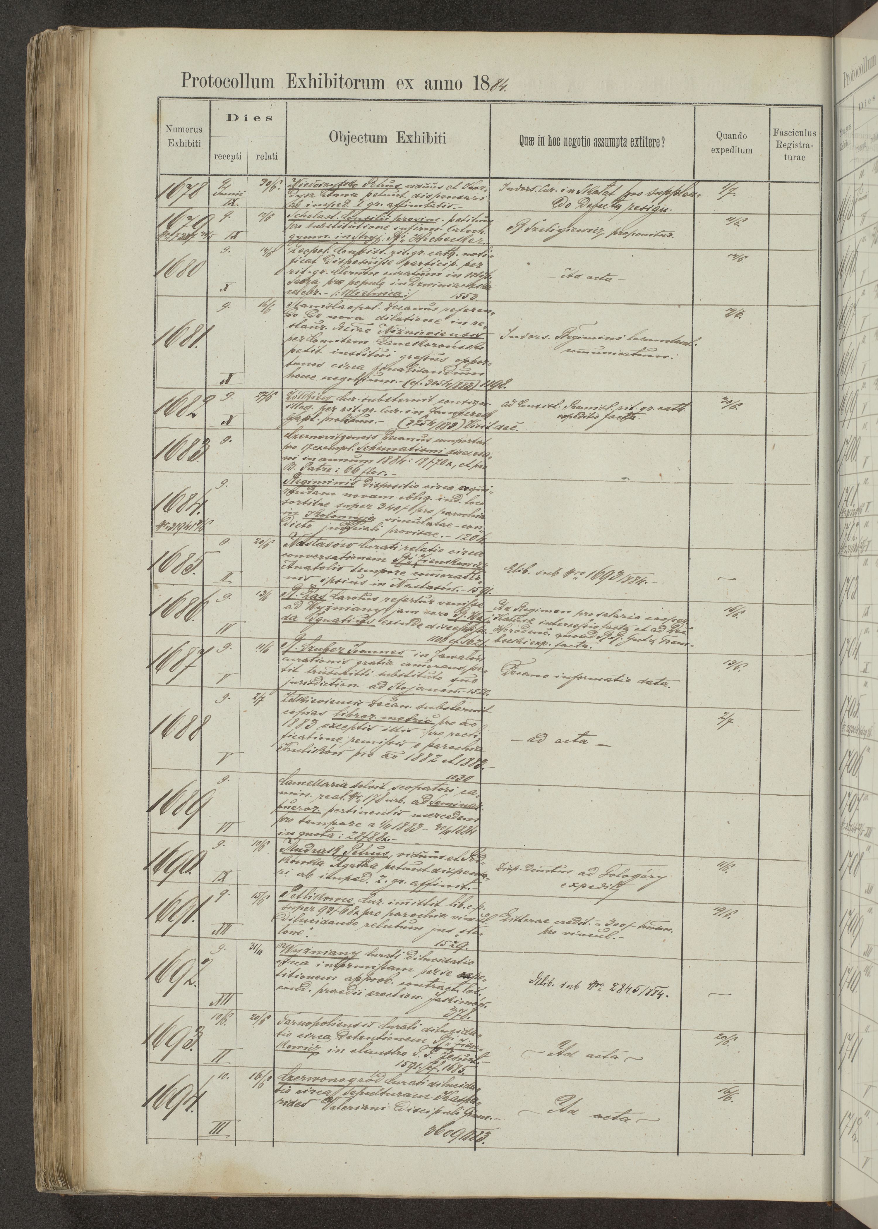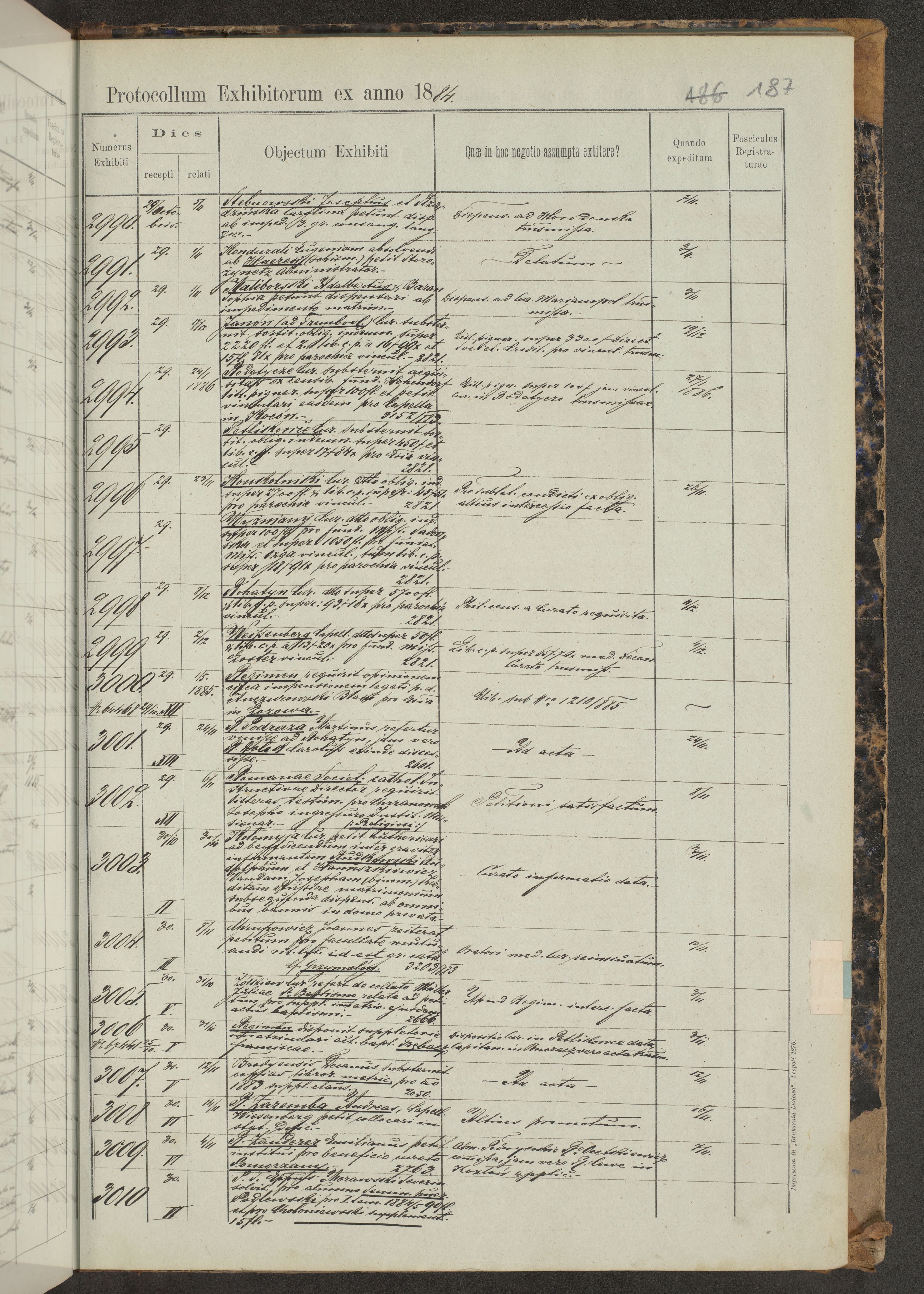 Protocollon exhibitorum in Ecclesiasticis ex anno 1883-1884