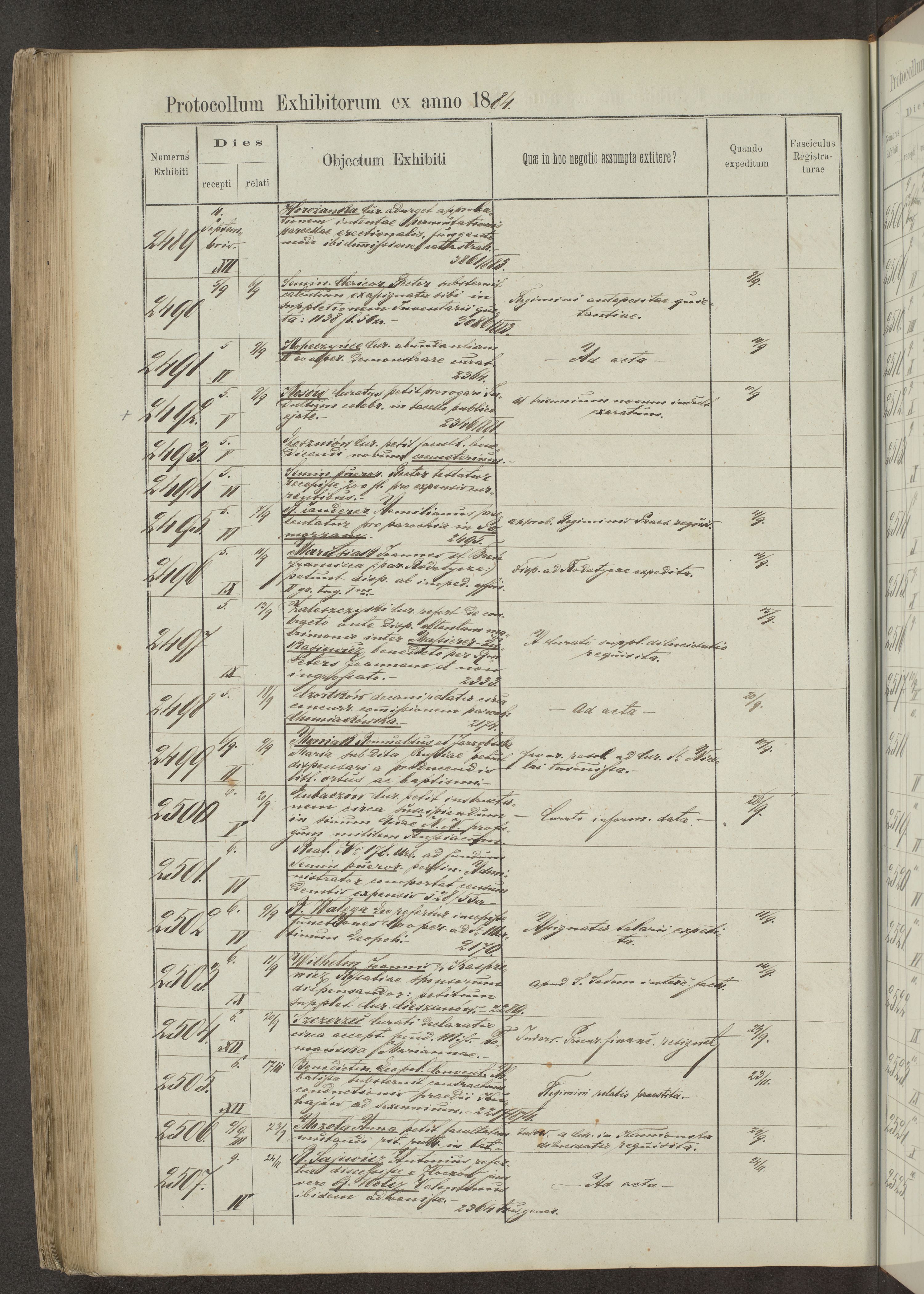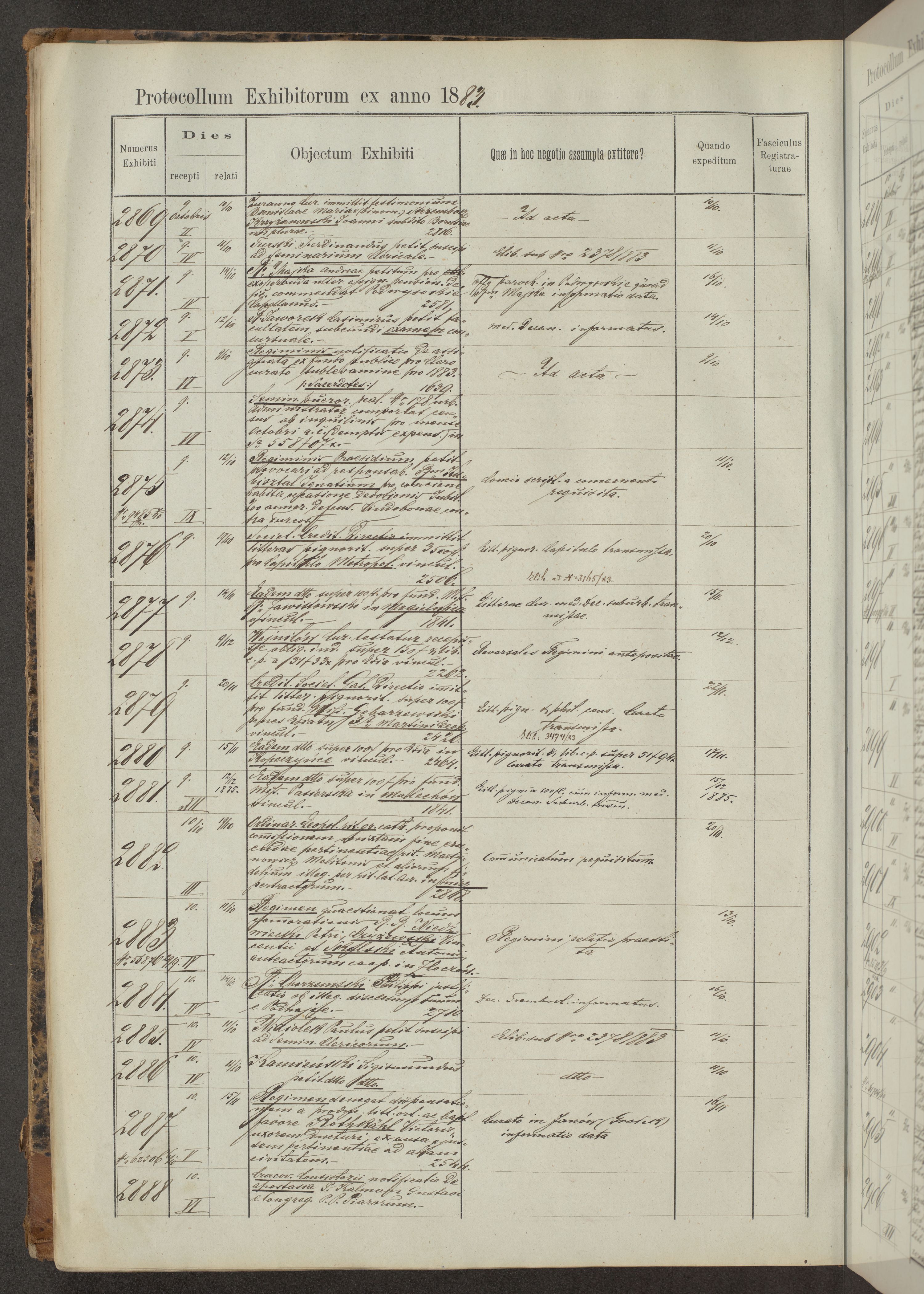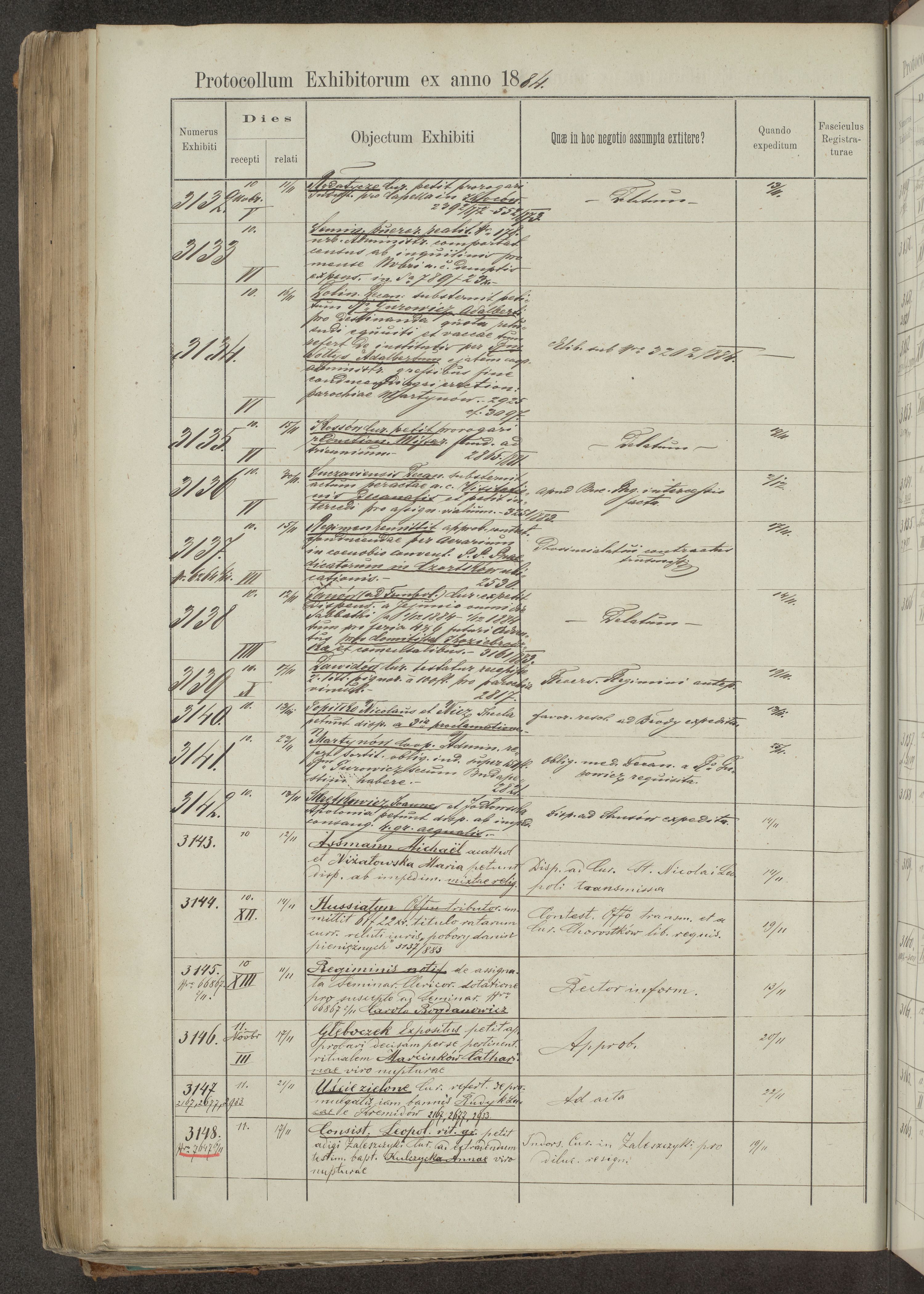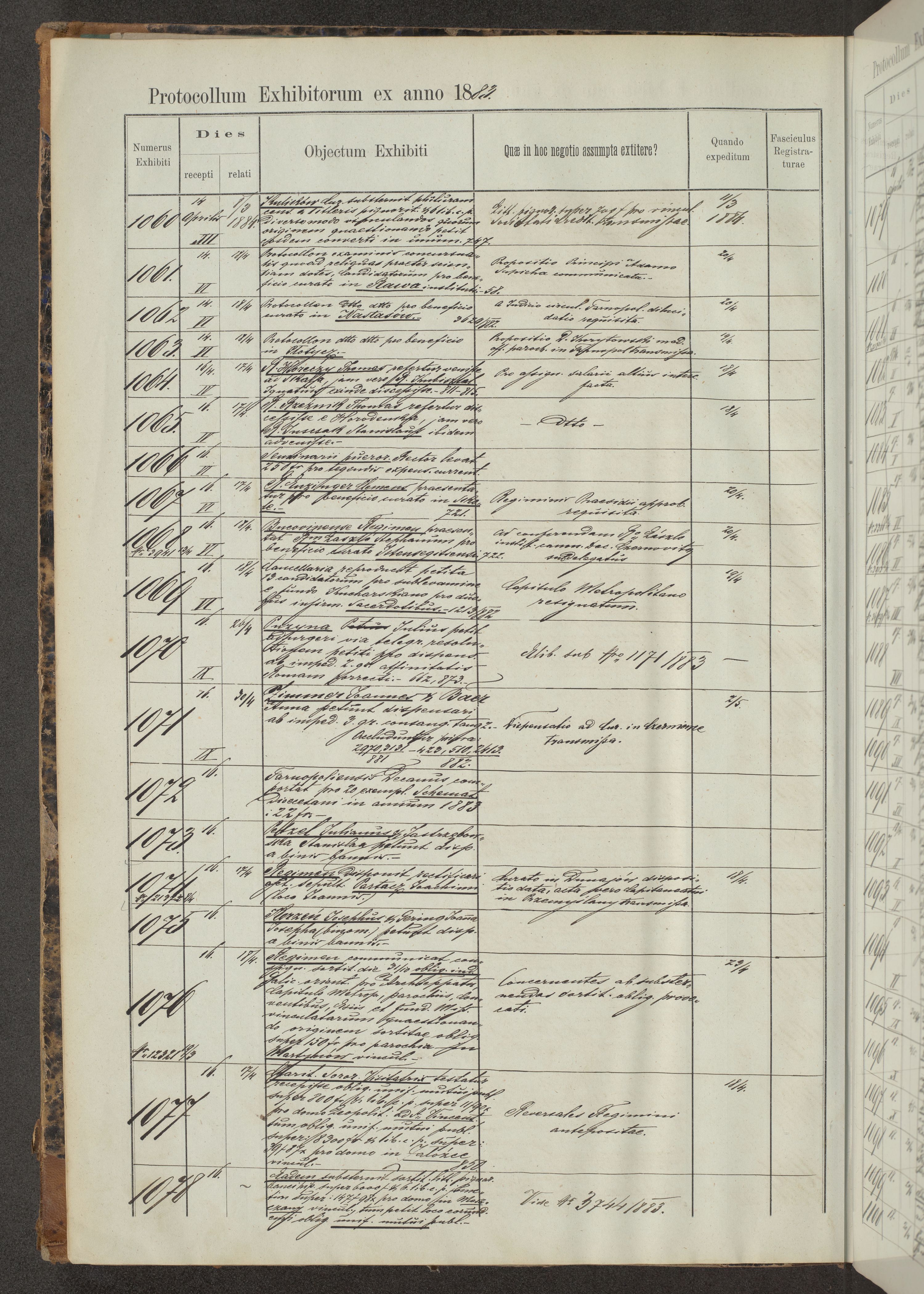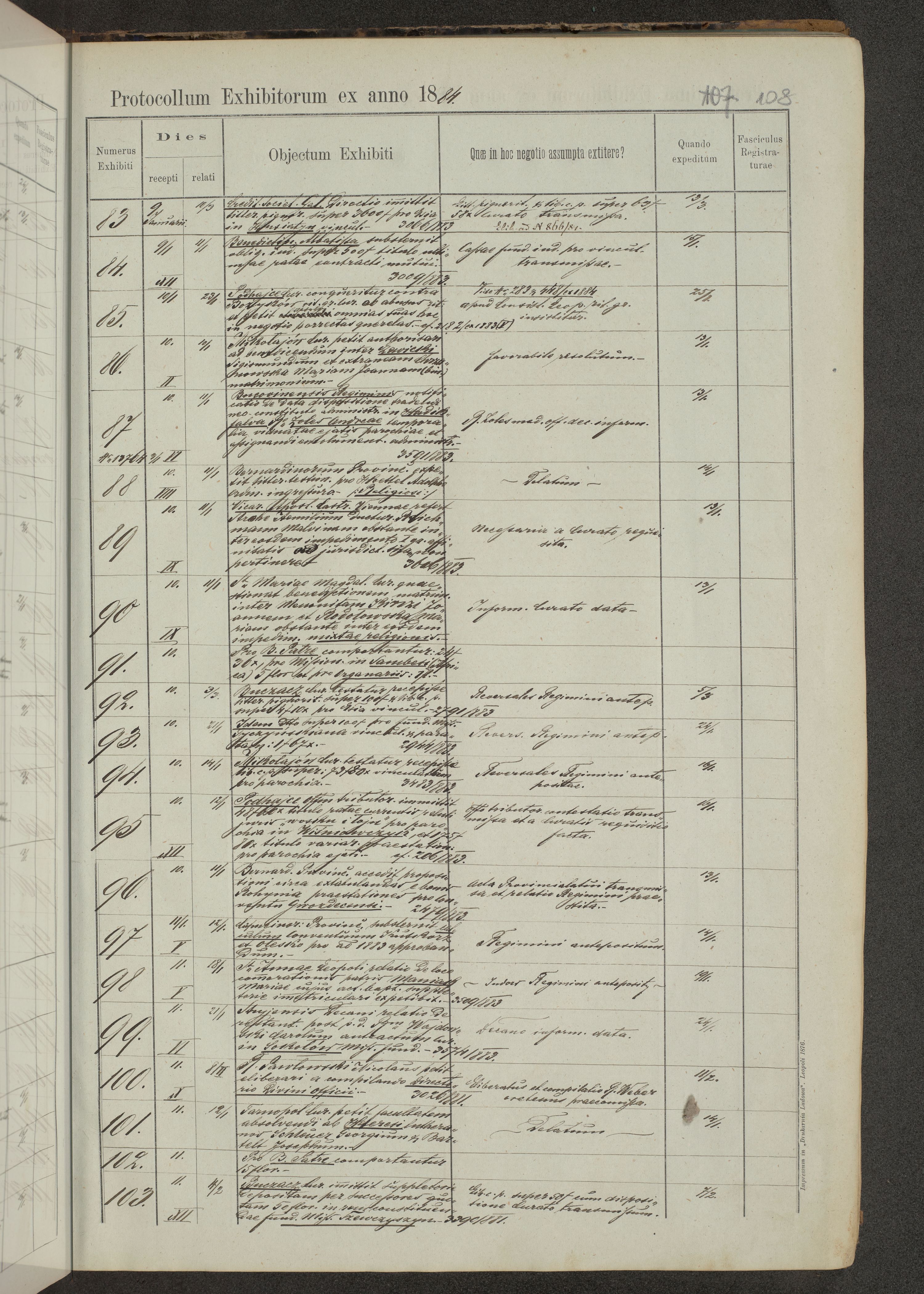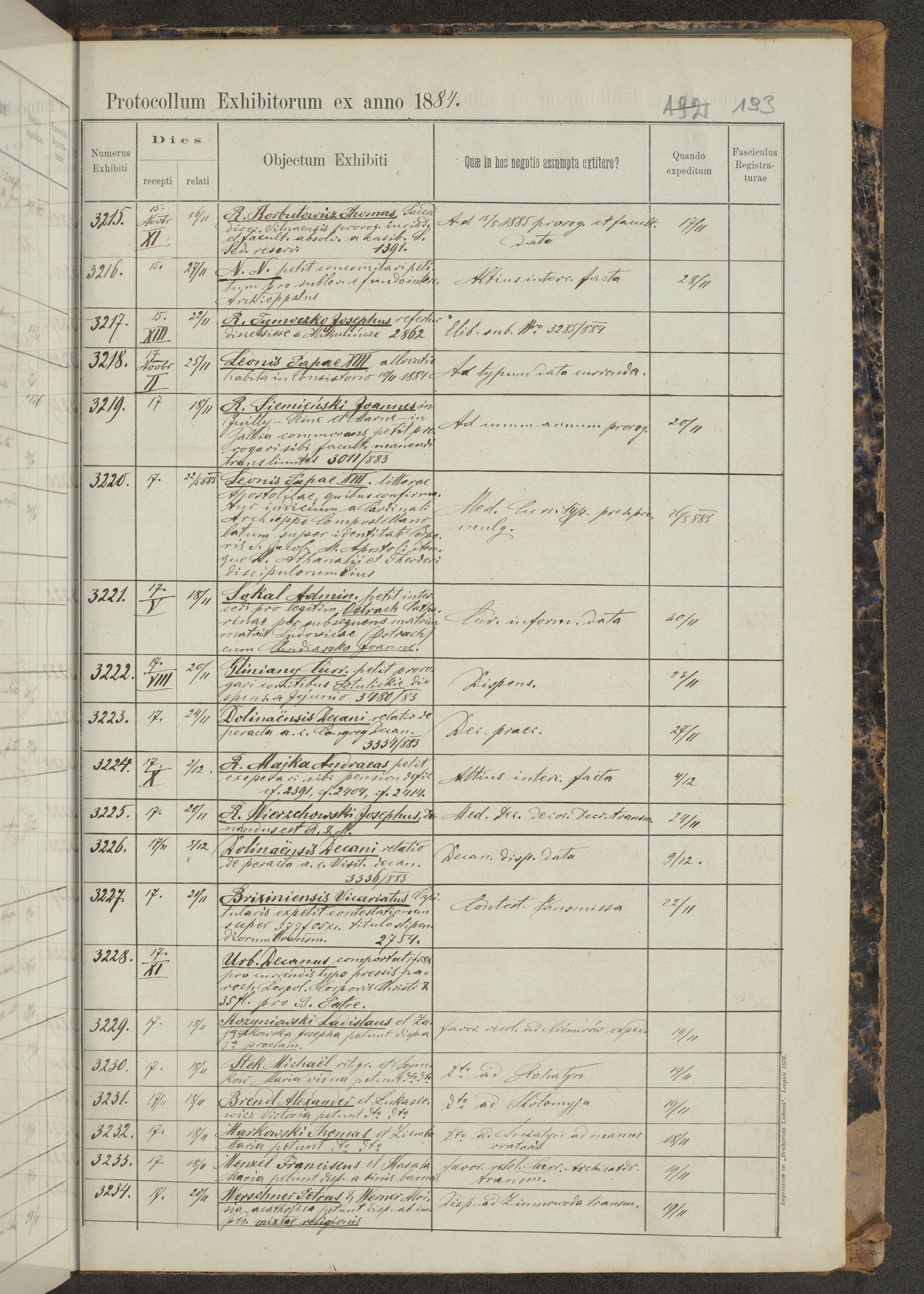 Protocollon exhibitorum in Ecclesiasticis ex anno 1883-1884
