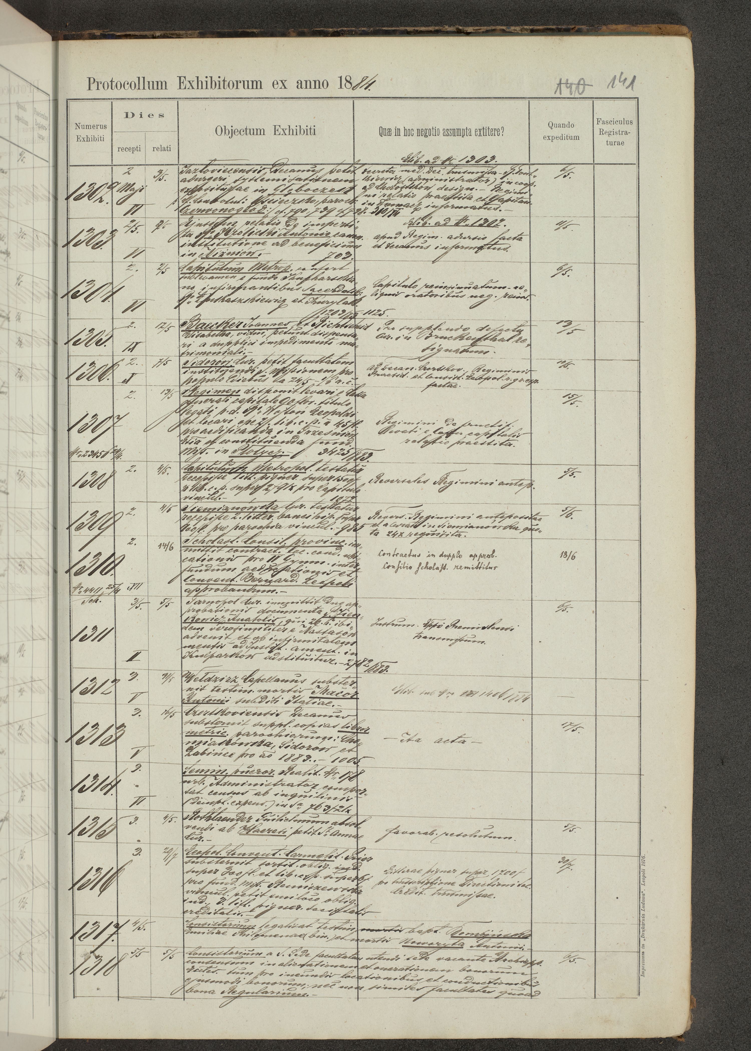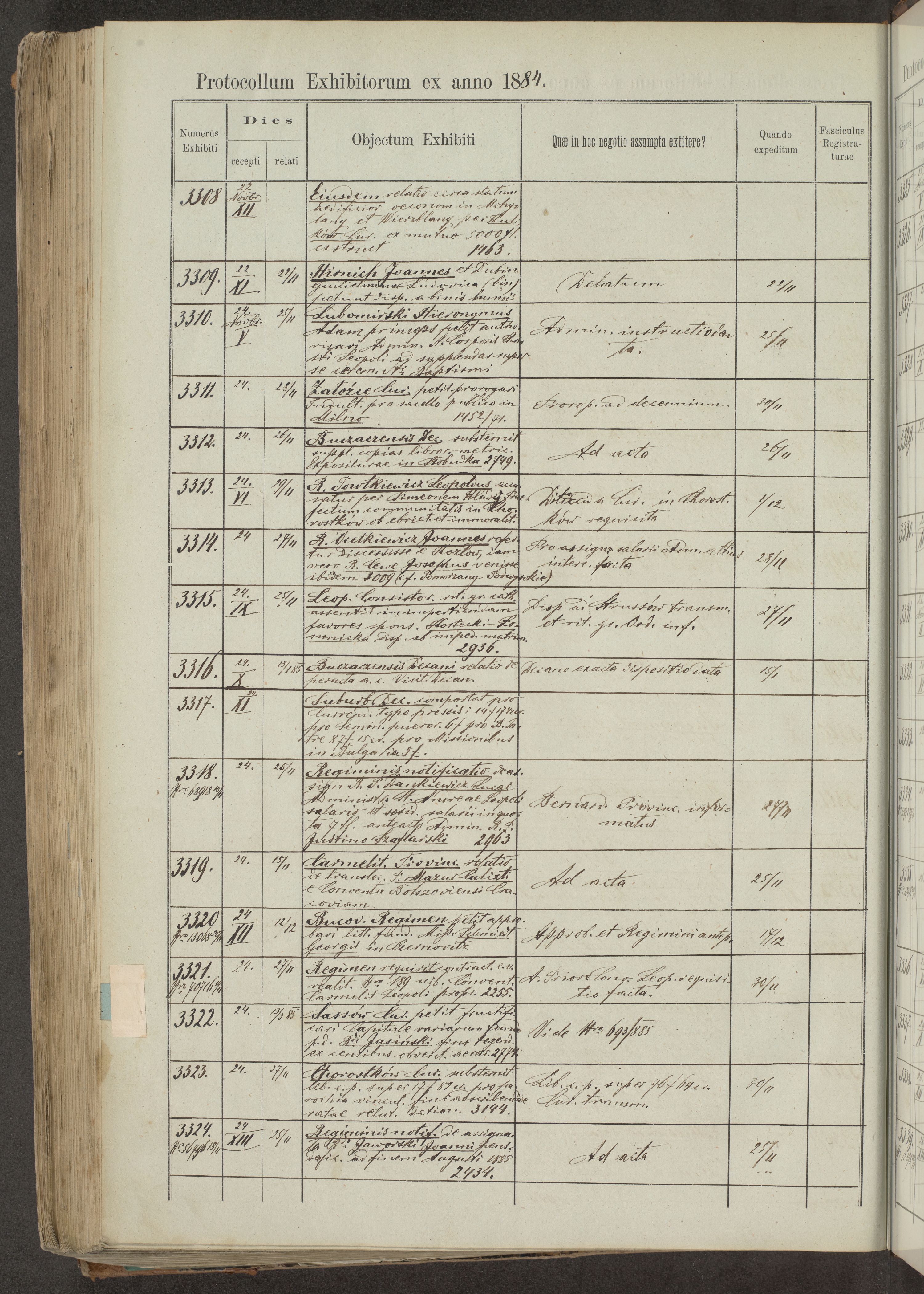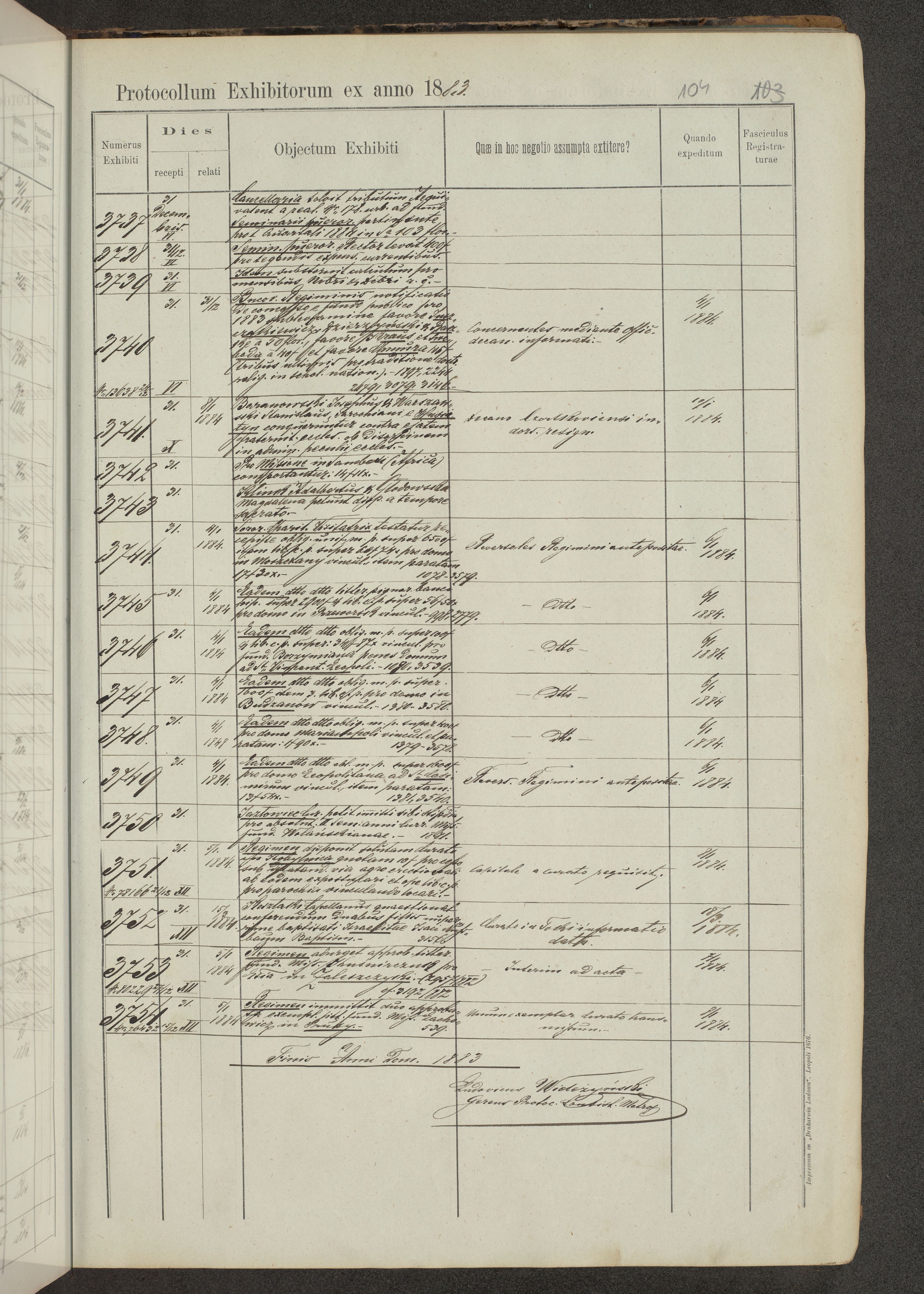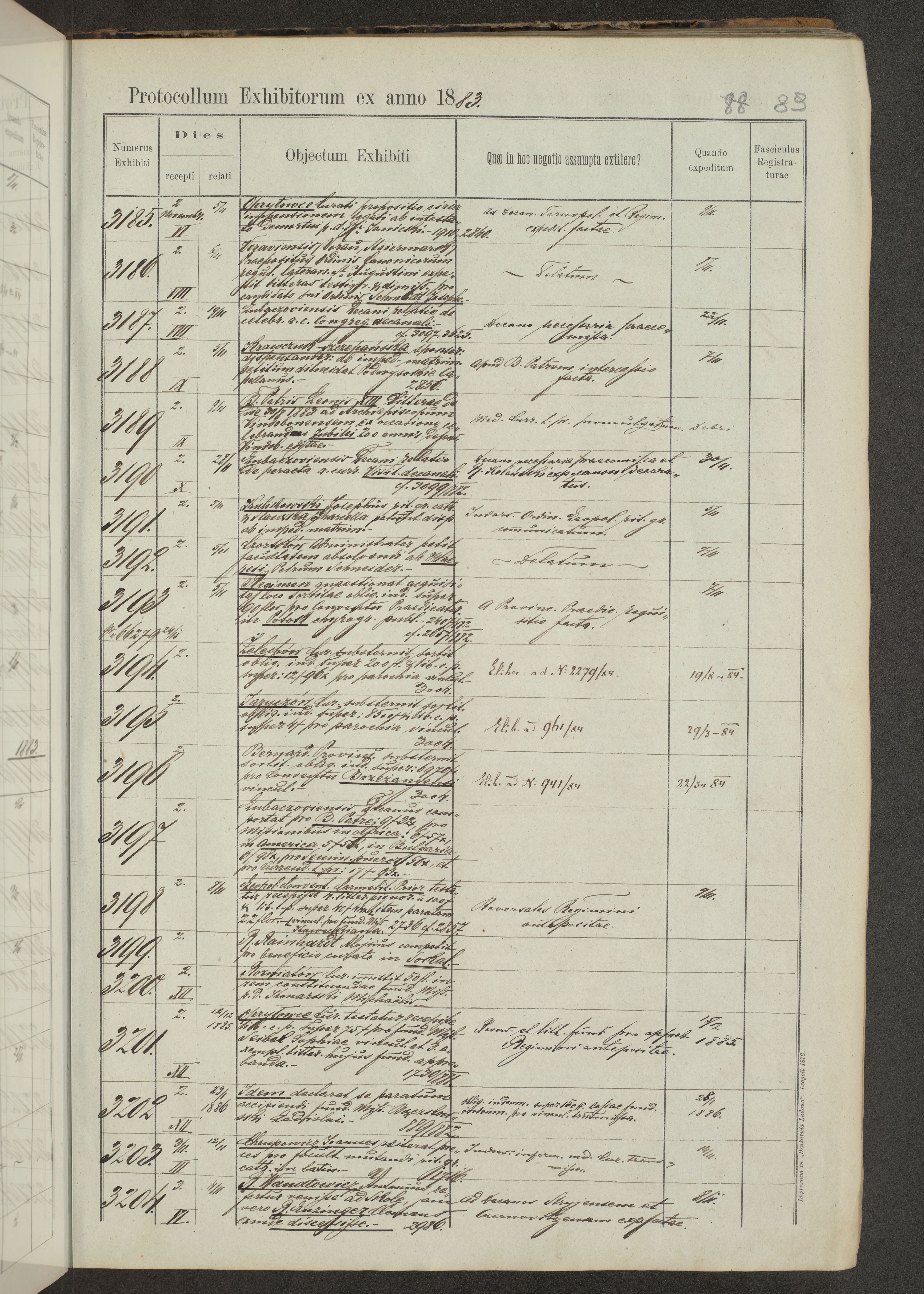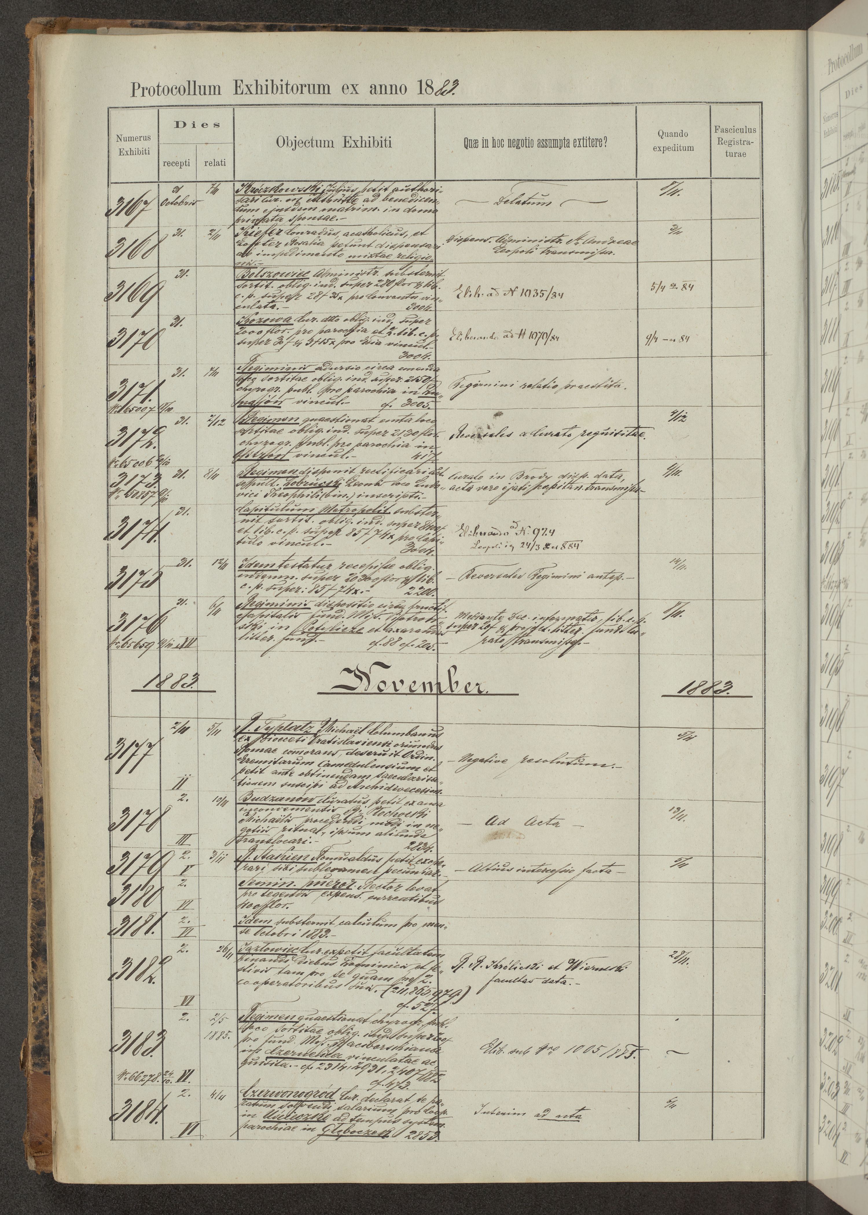 Protocollon exhibitorum in Ecclesiasticis ex anno 1883-1884