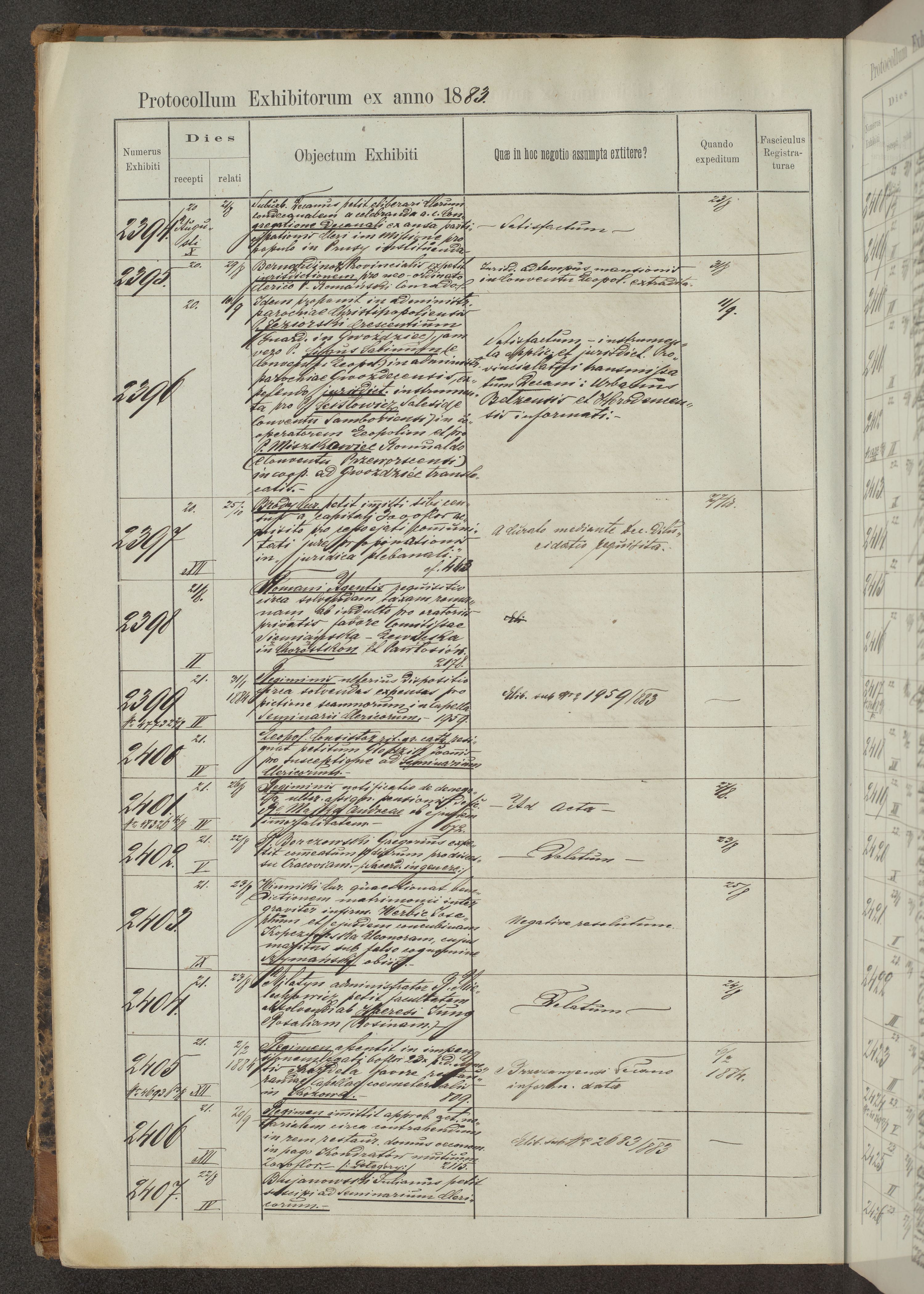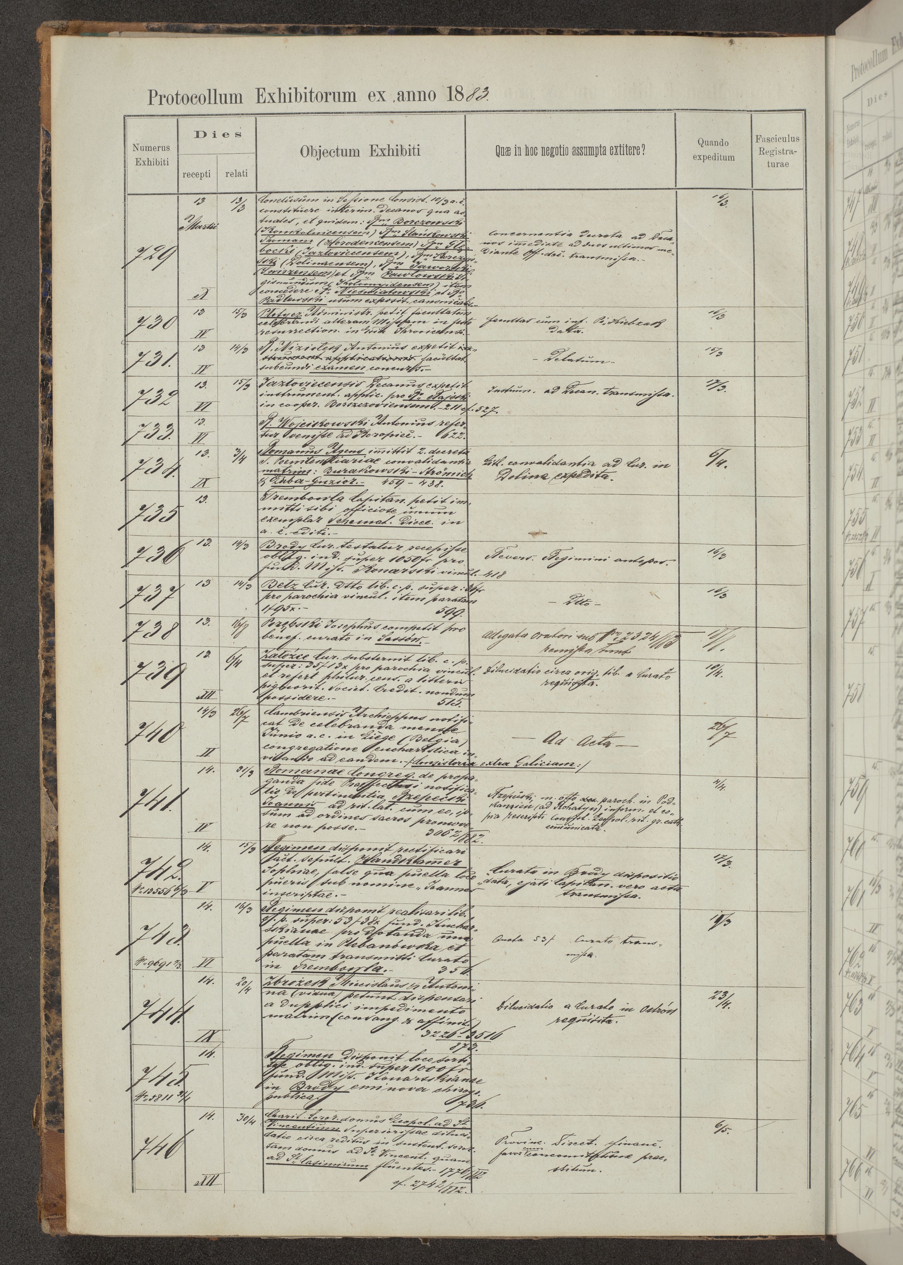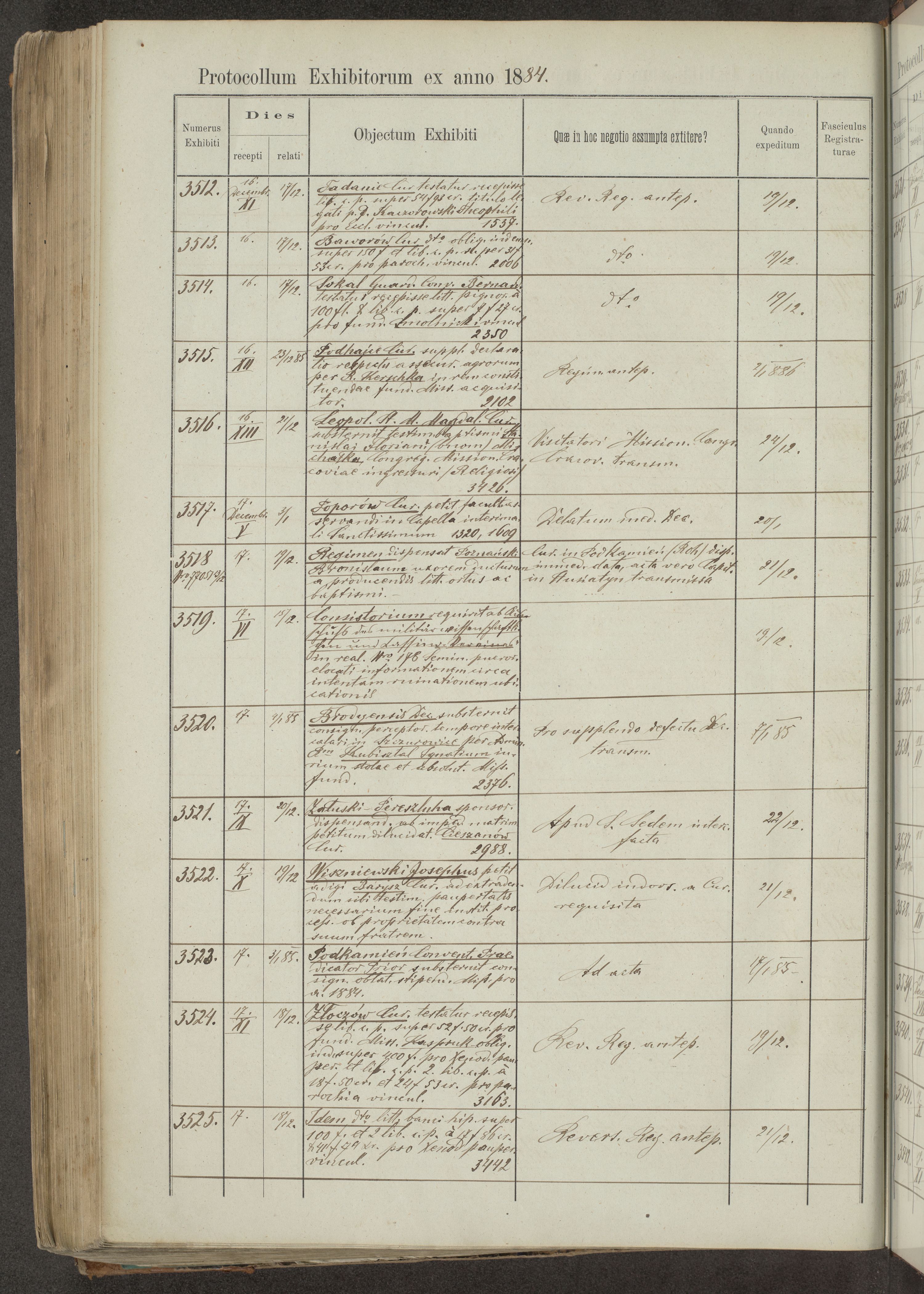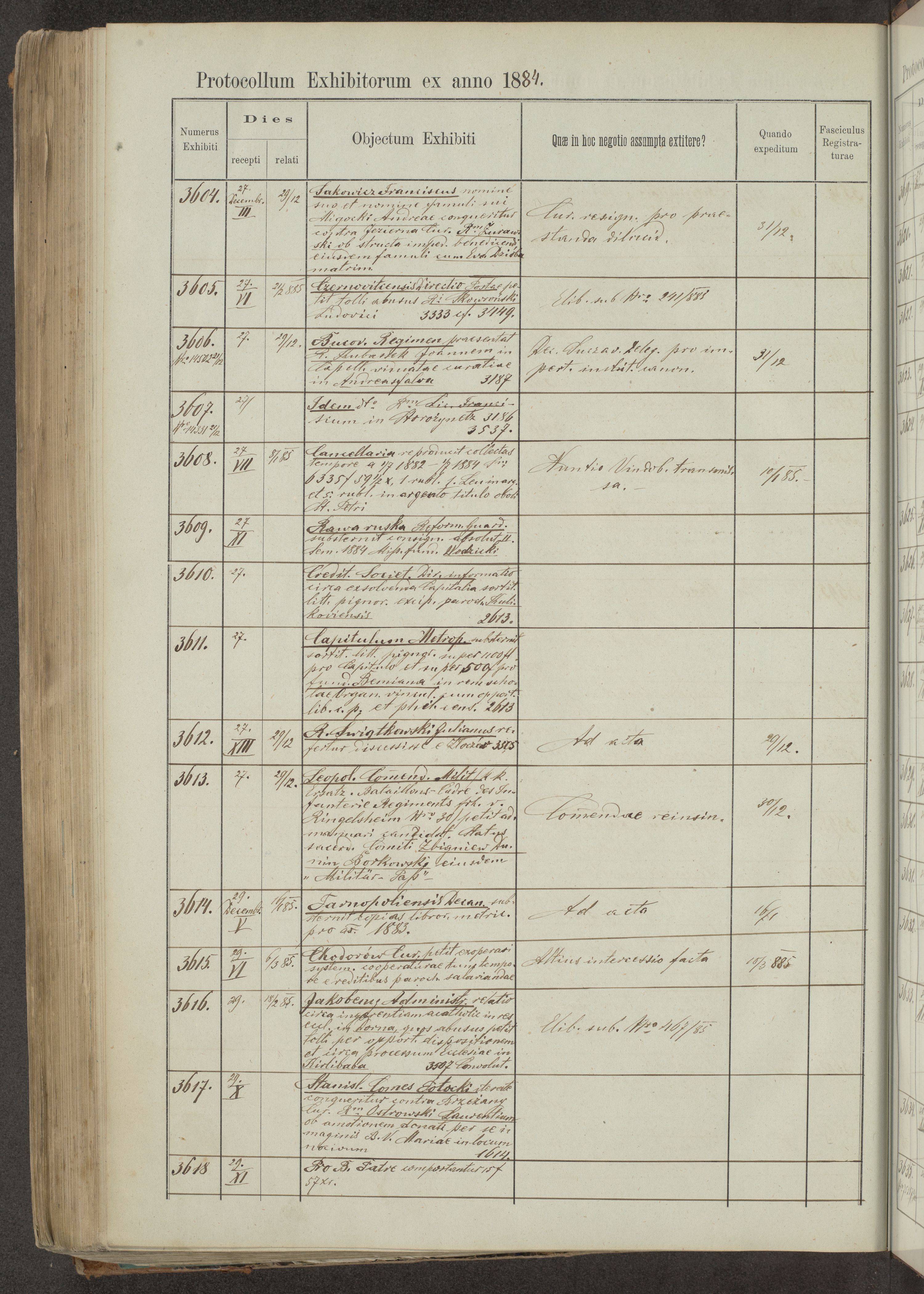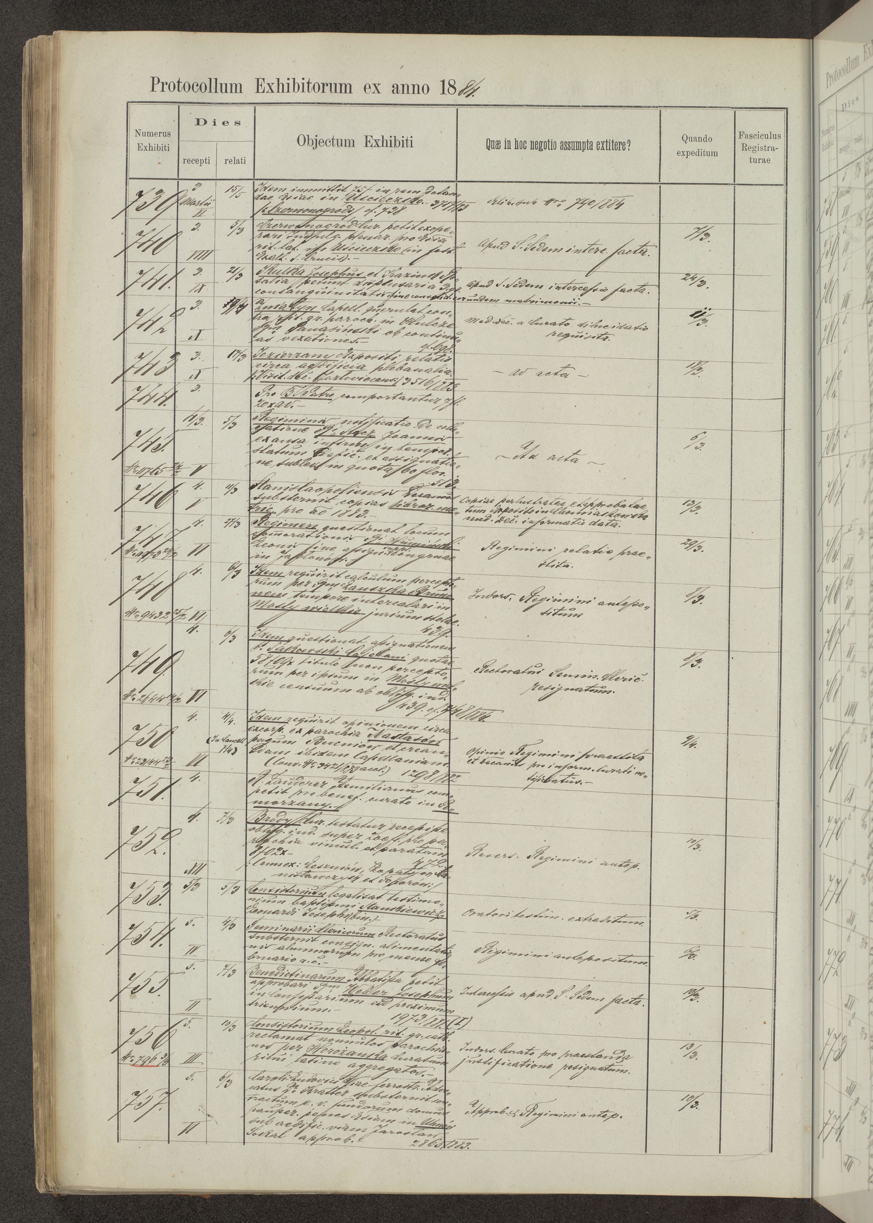 Protocollon exhibitorum in Ecclesiasticis ex anno 1883-1884