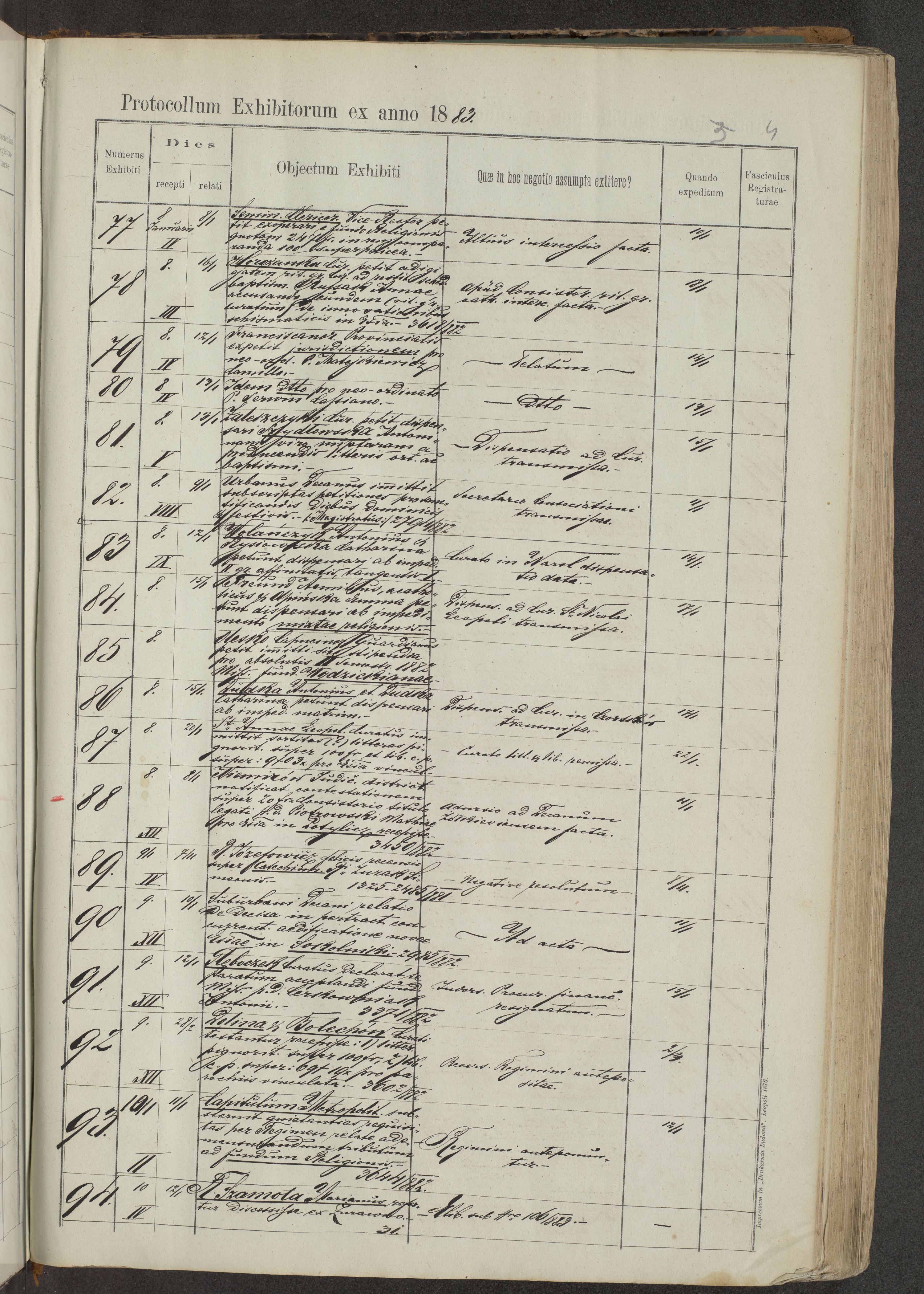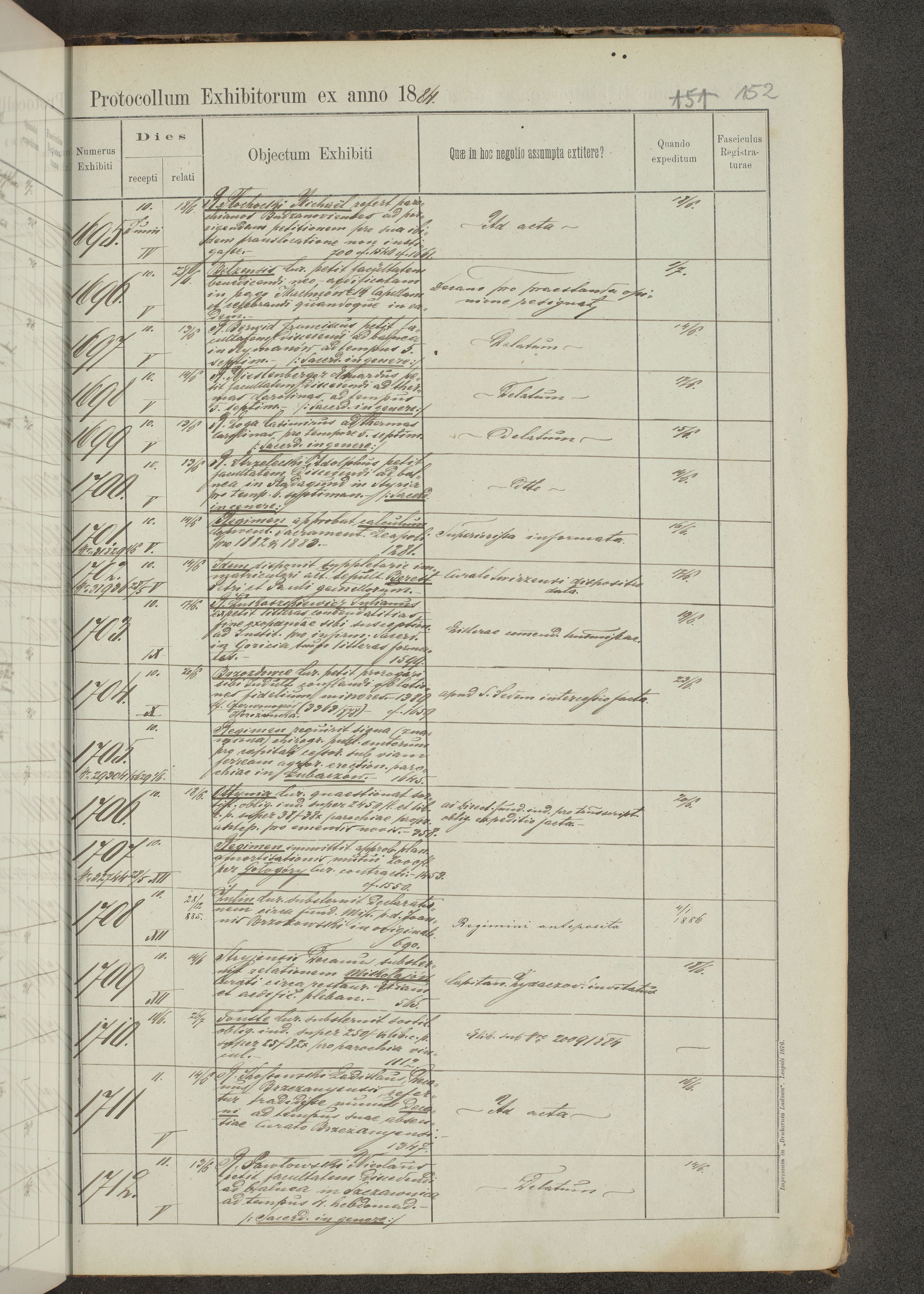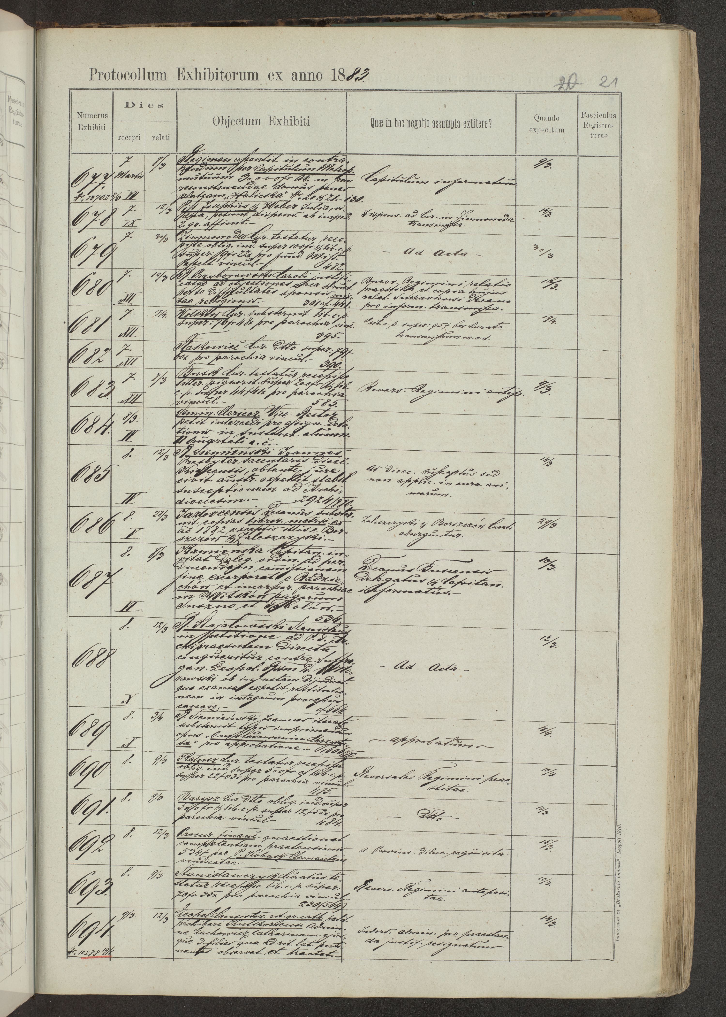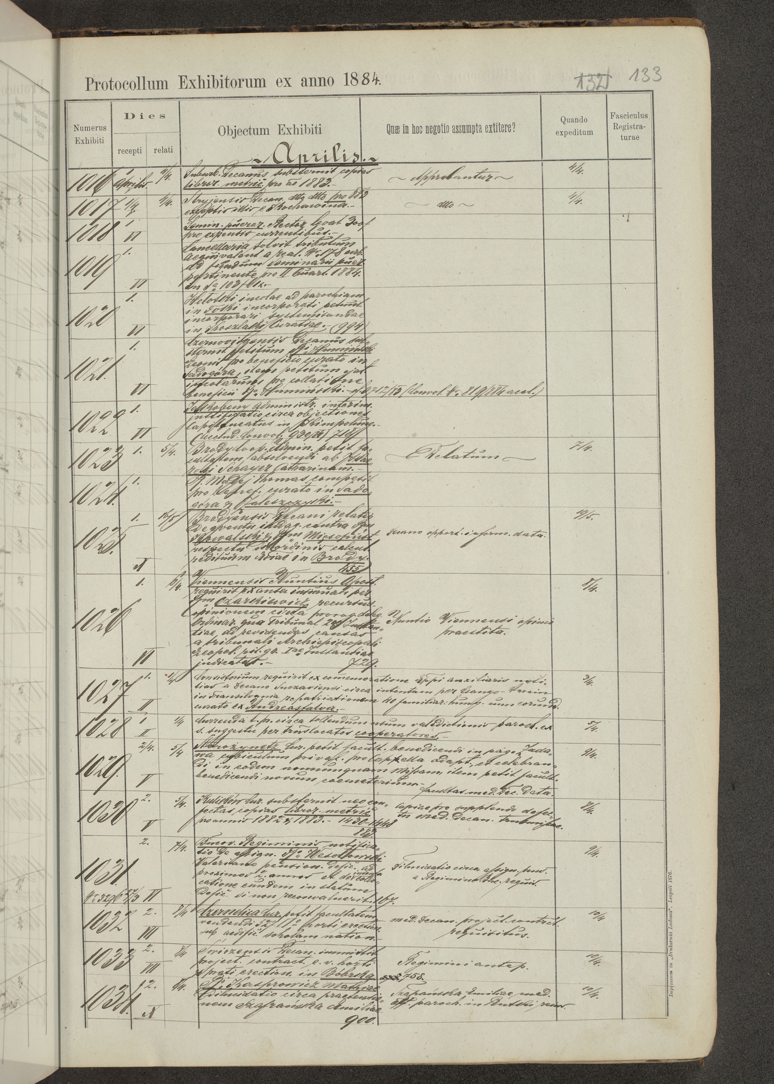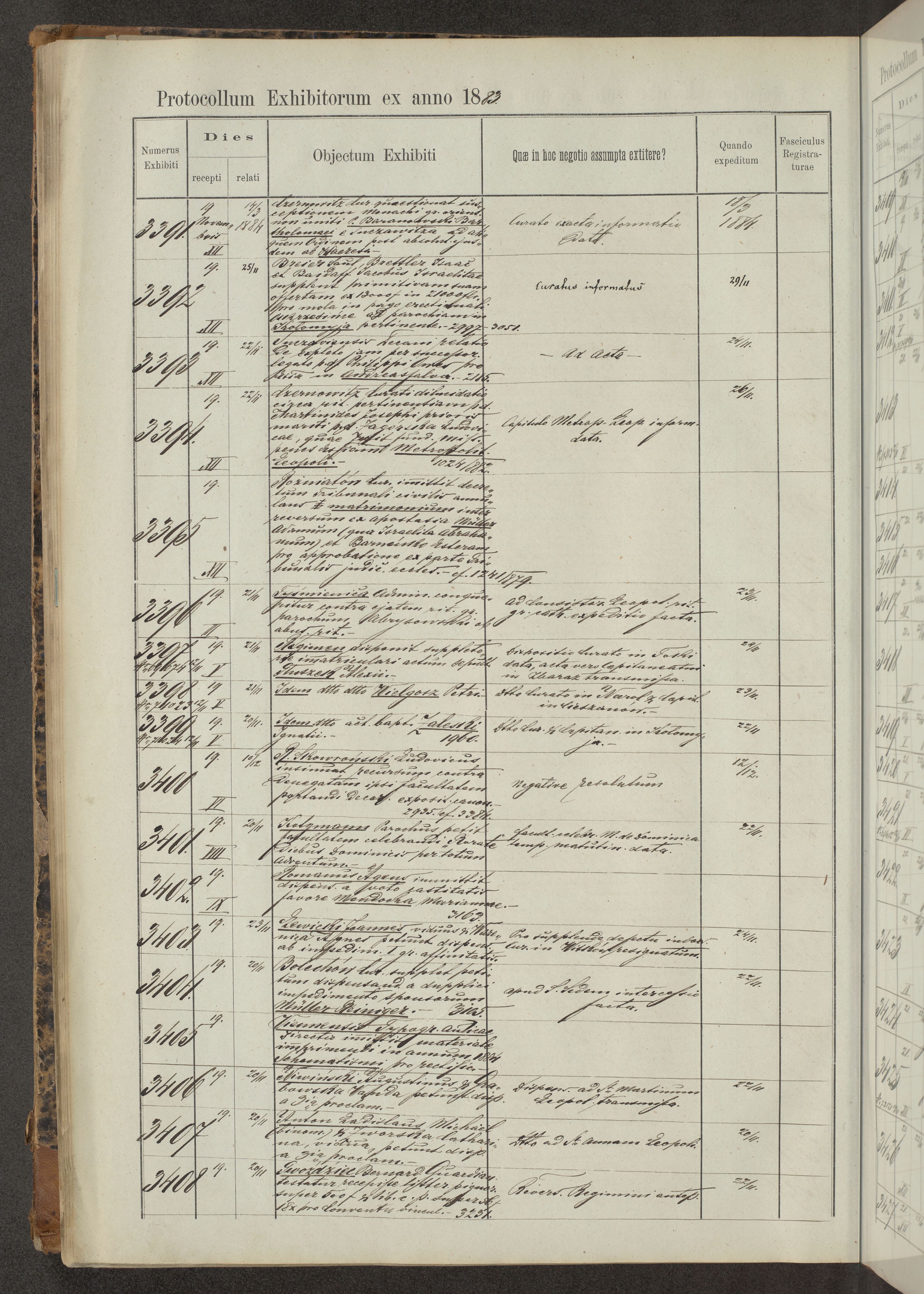 Protocollon exhibitorum in Ecclesiasticis ex anno 1883-1884