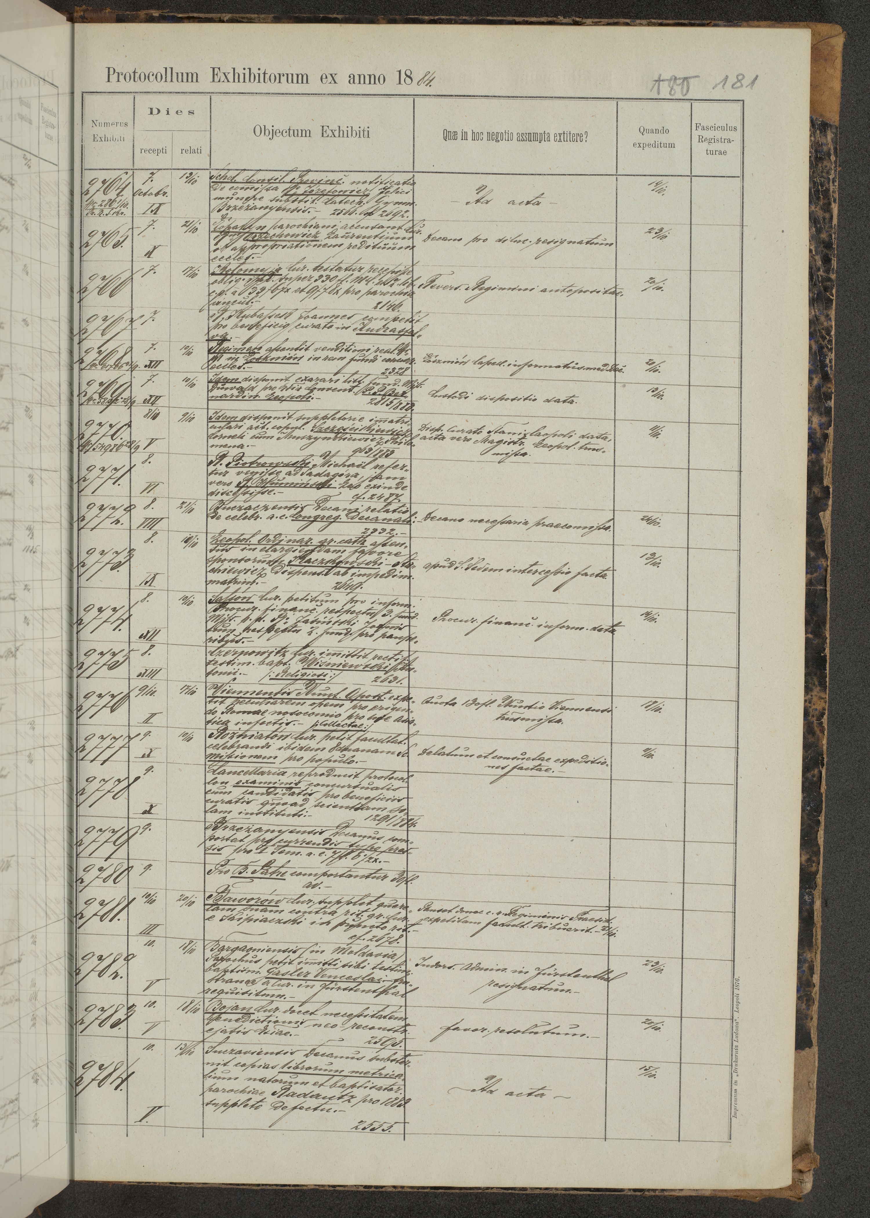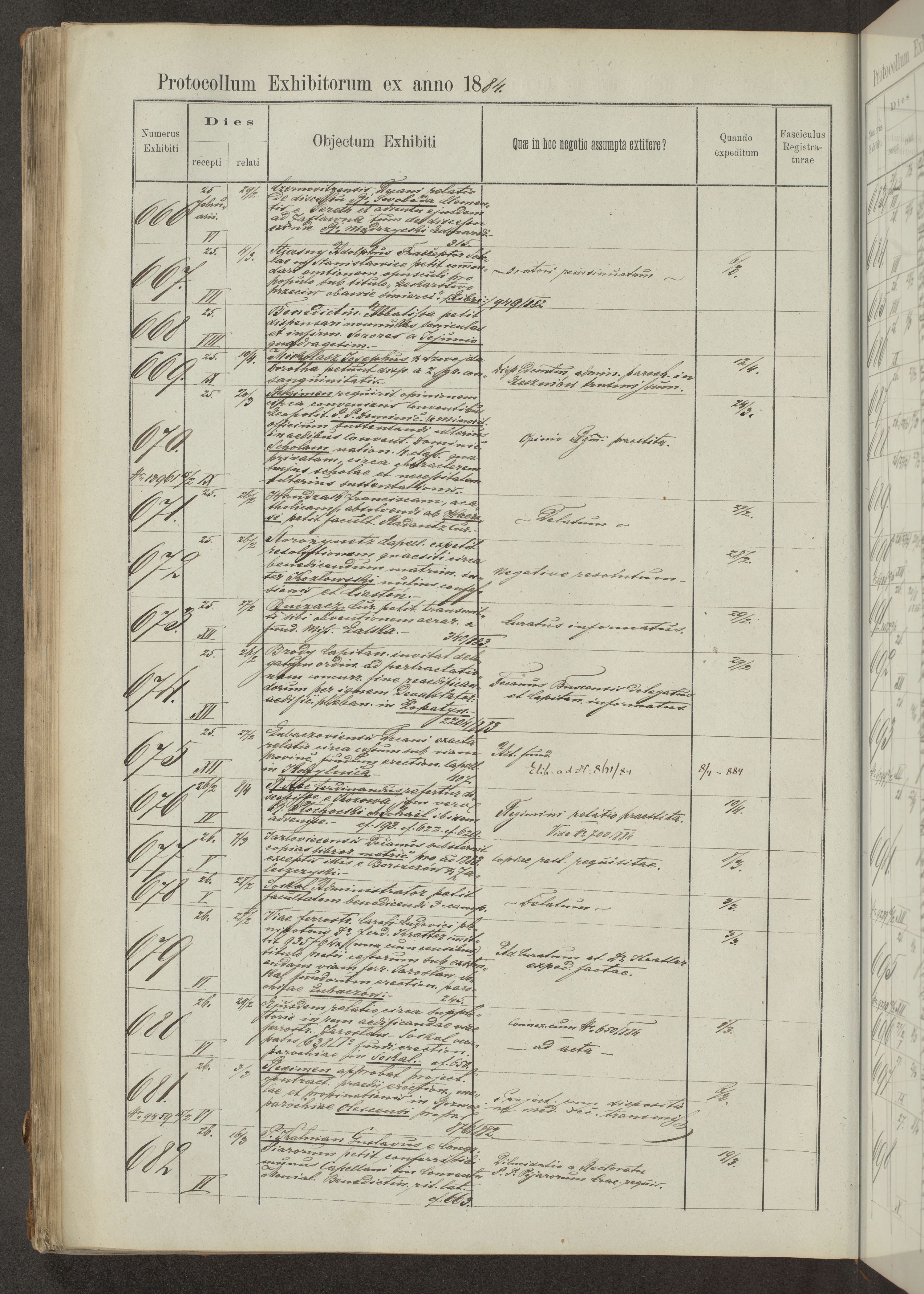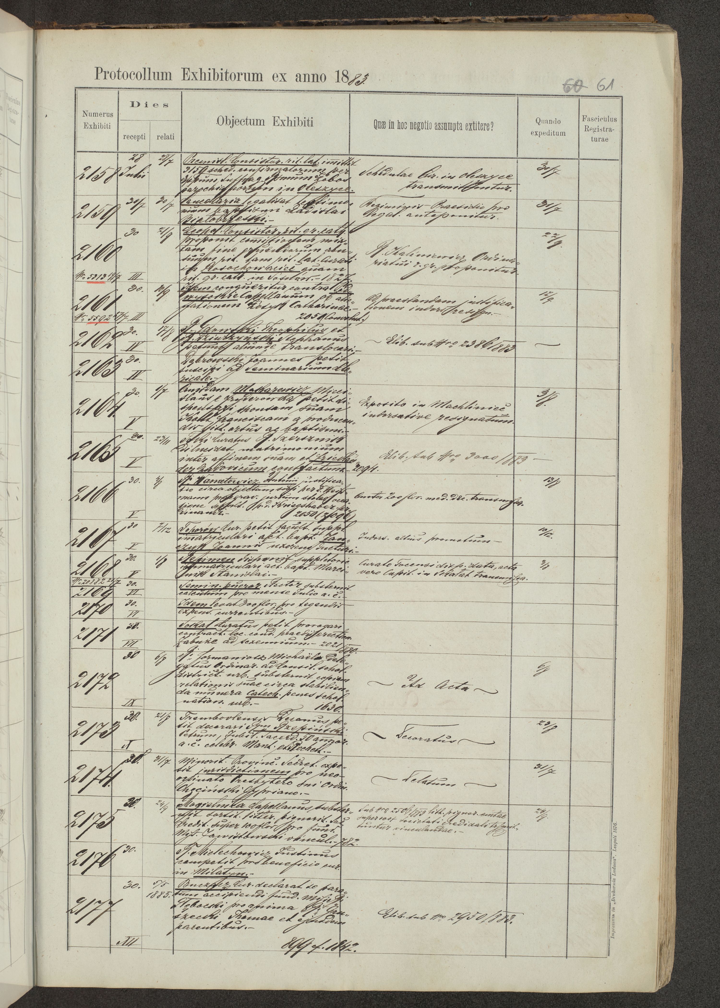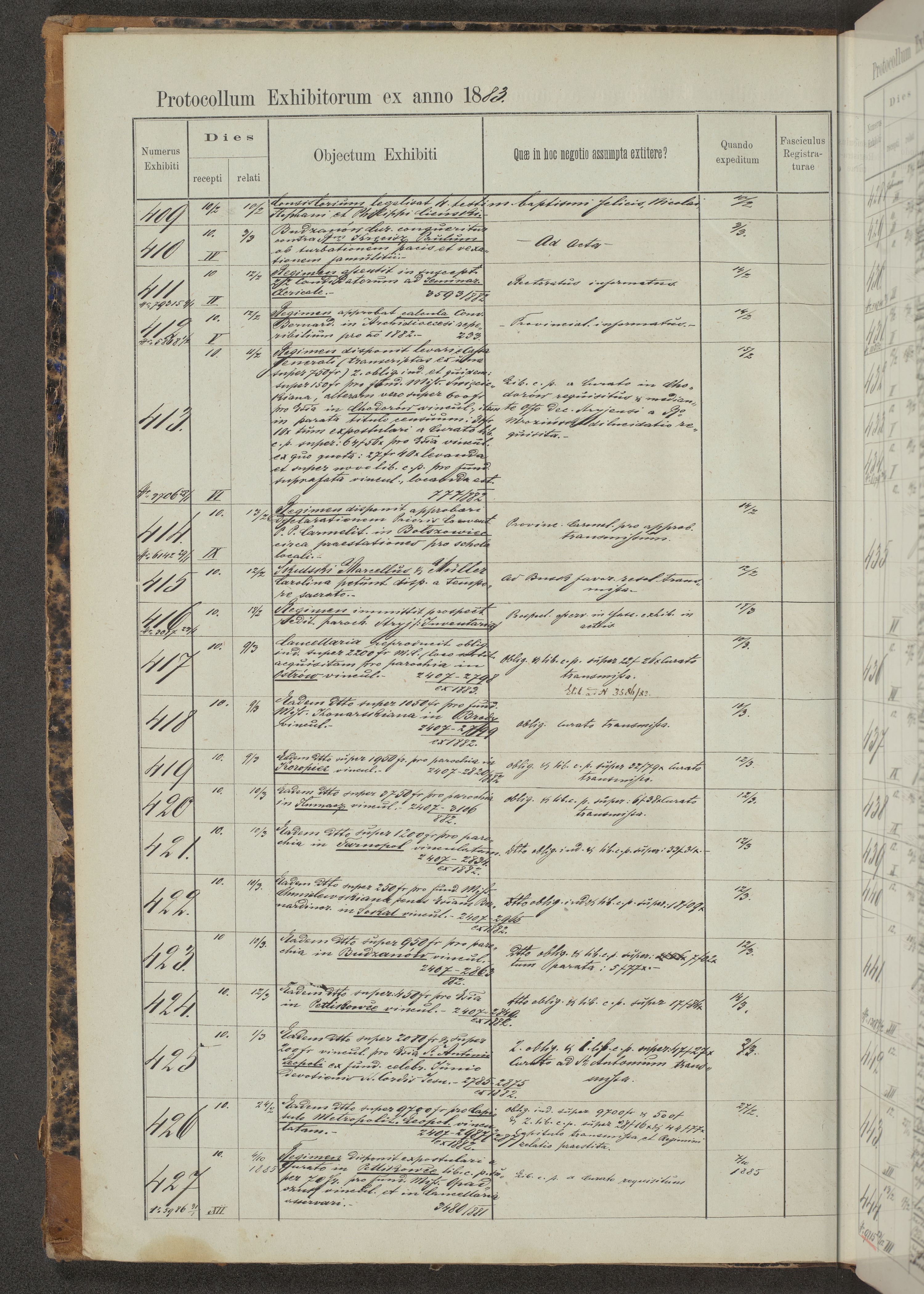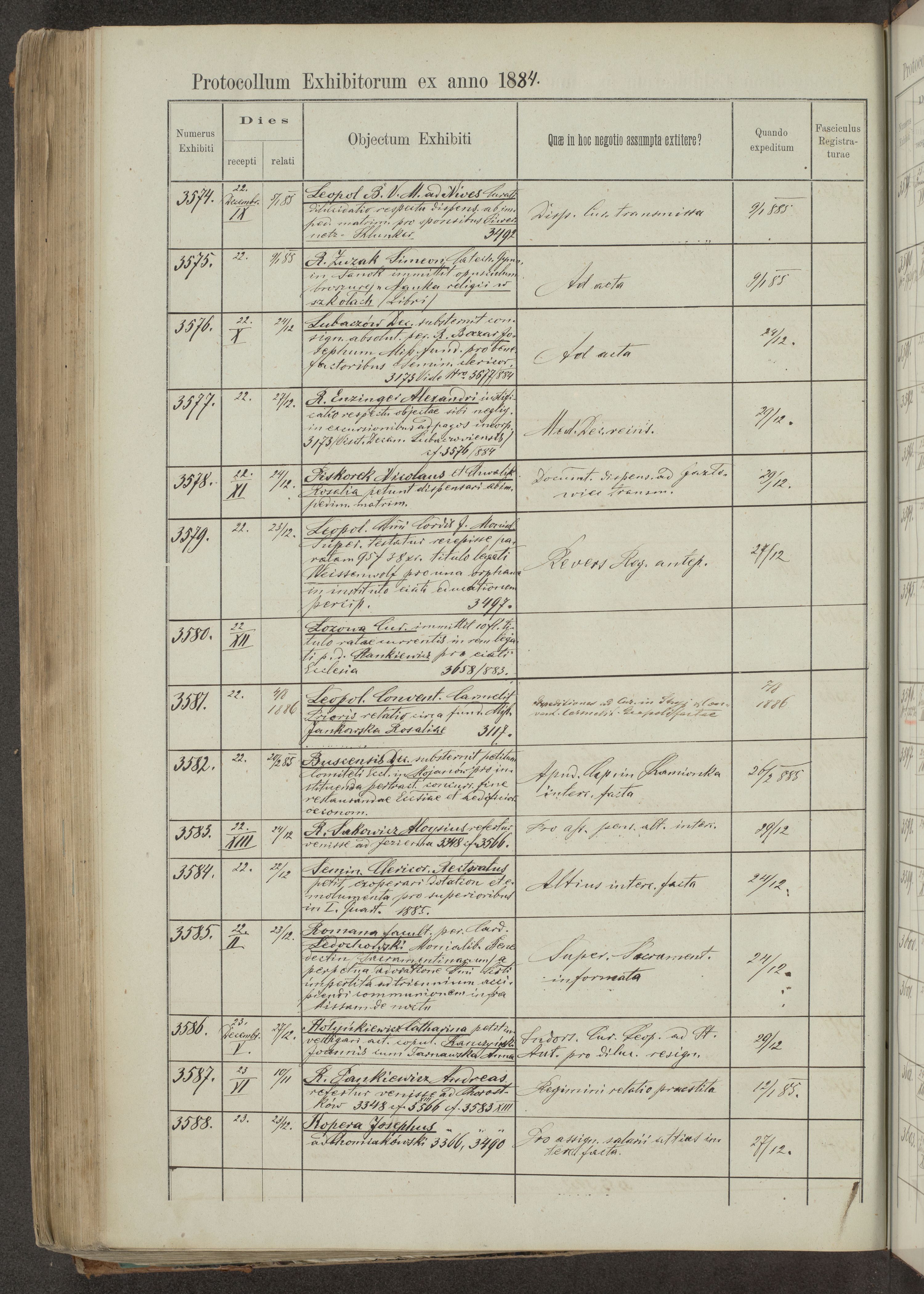 Protocollon exhibitorum in Ecclesiasticis ex anno 1883-1884