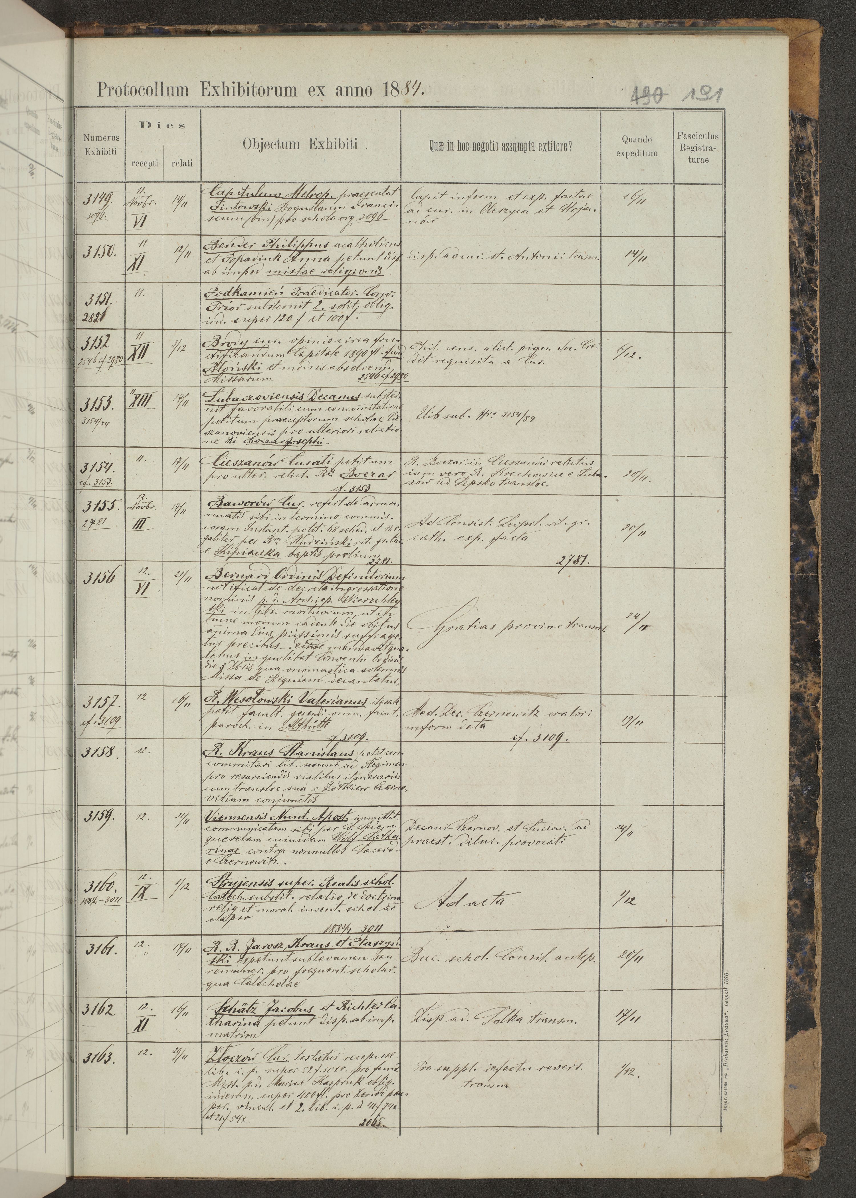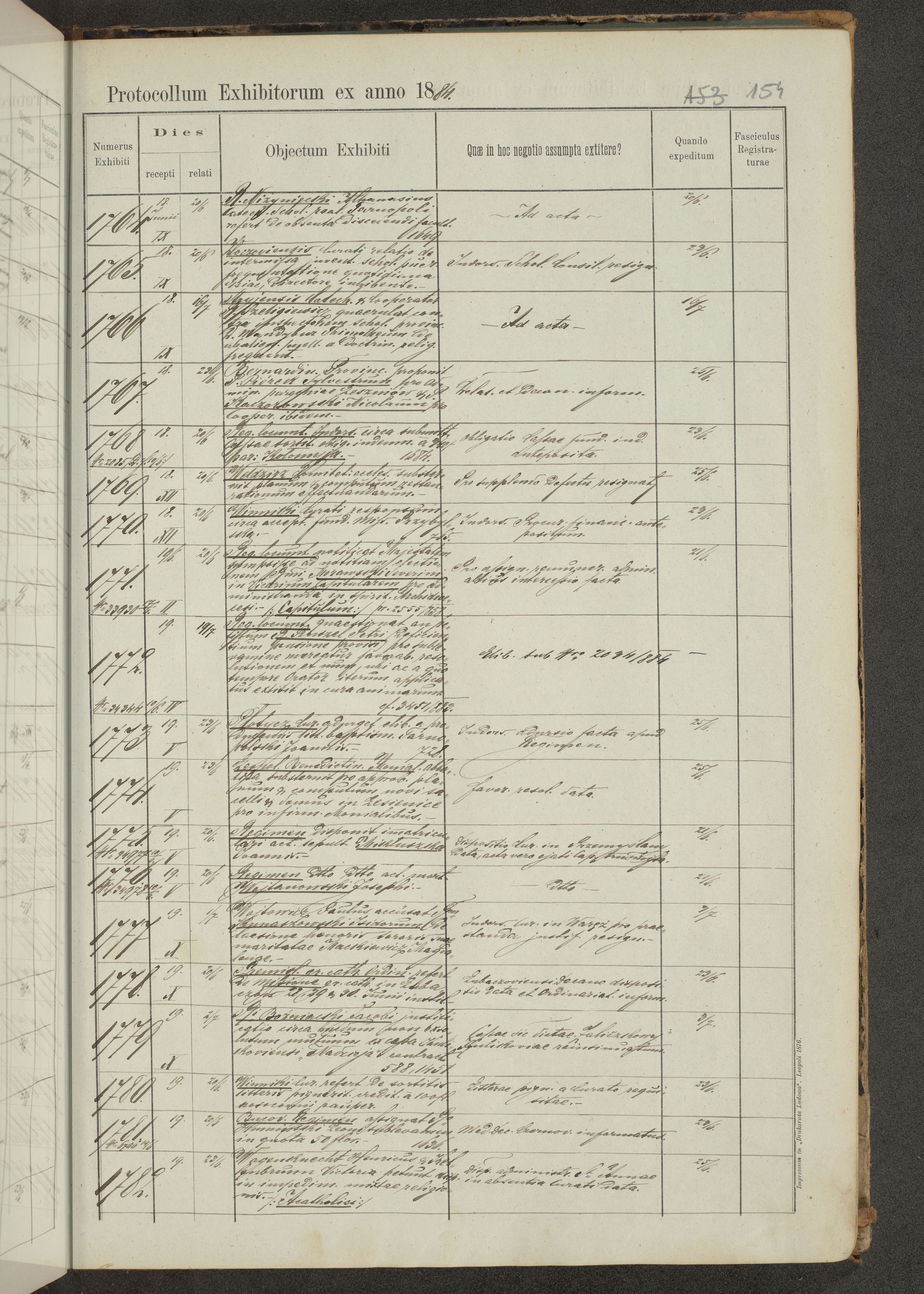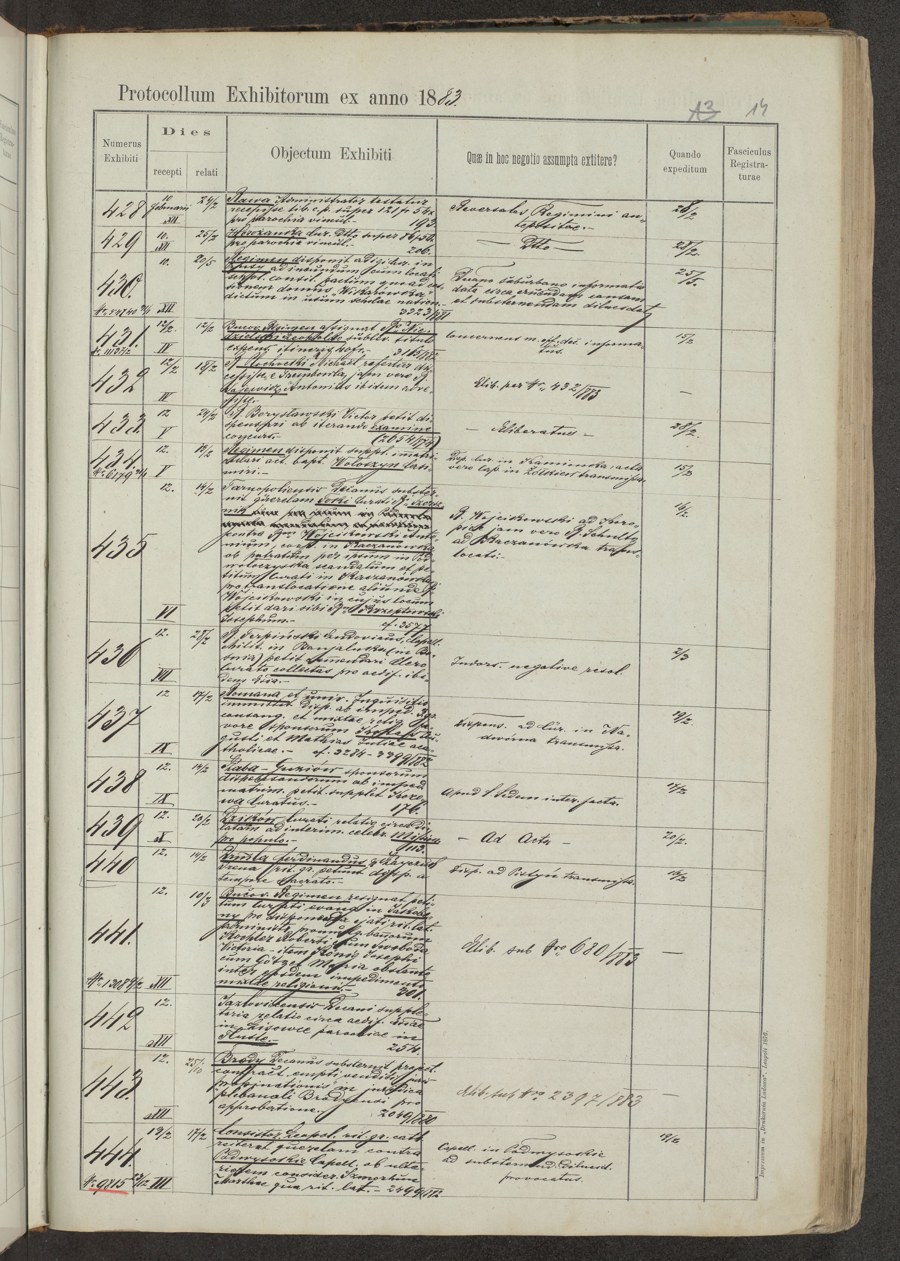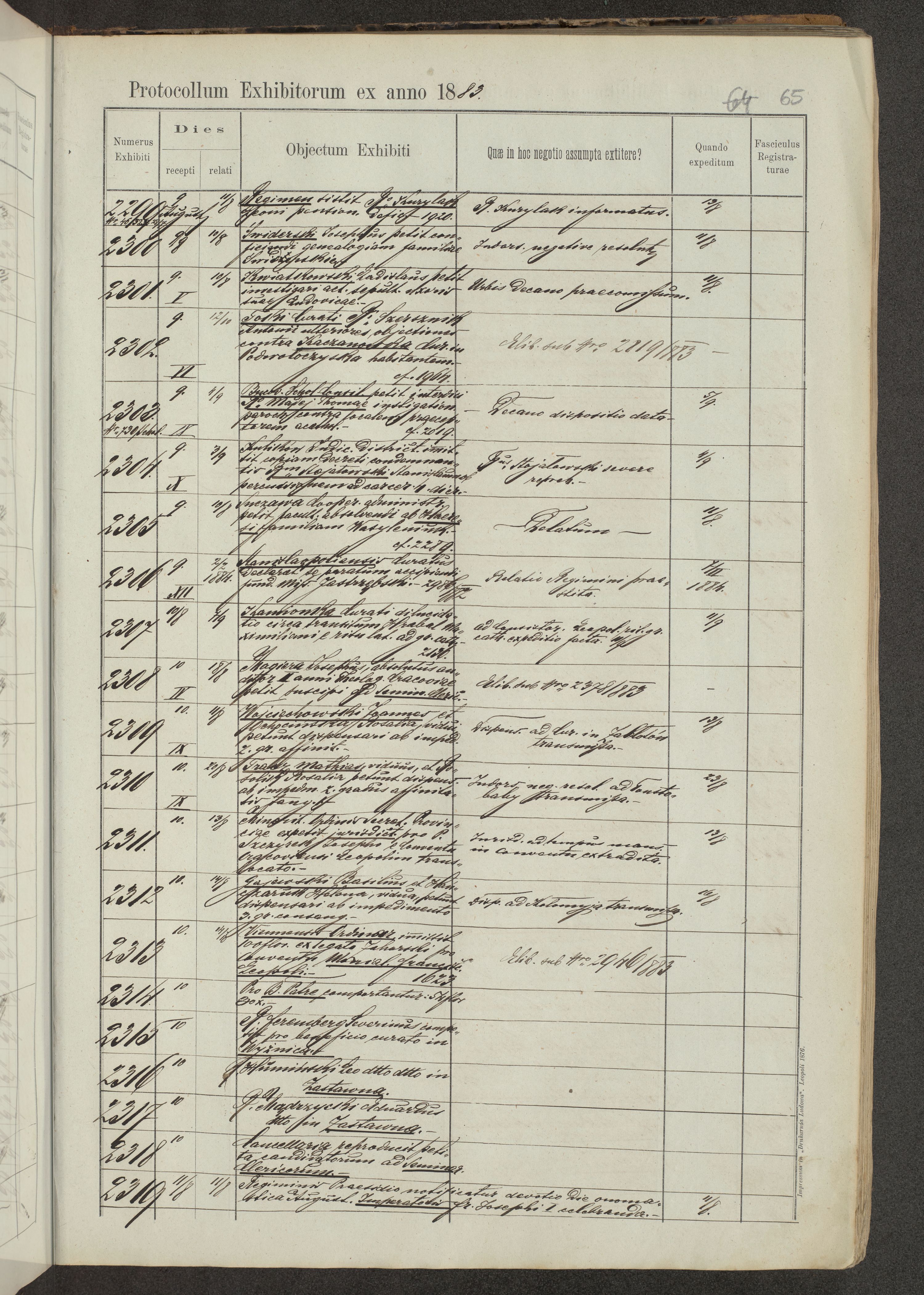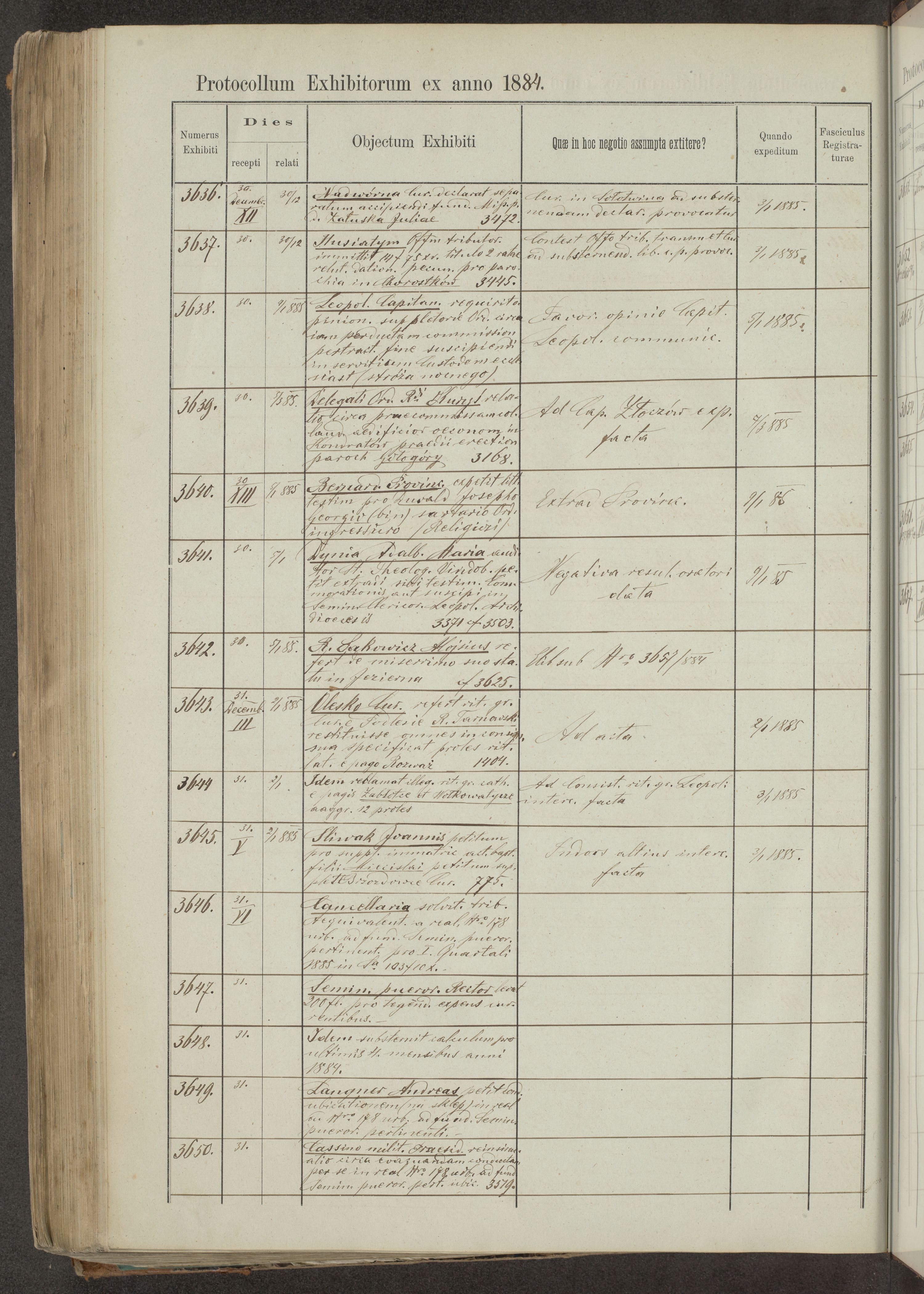 Protocollon exhibitorum in Ecclesiasticis ex anno 1883-1884