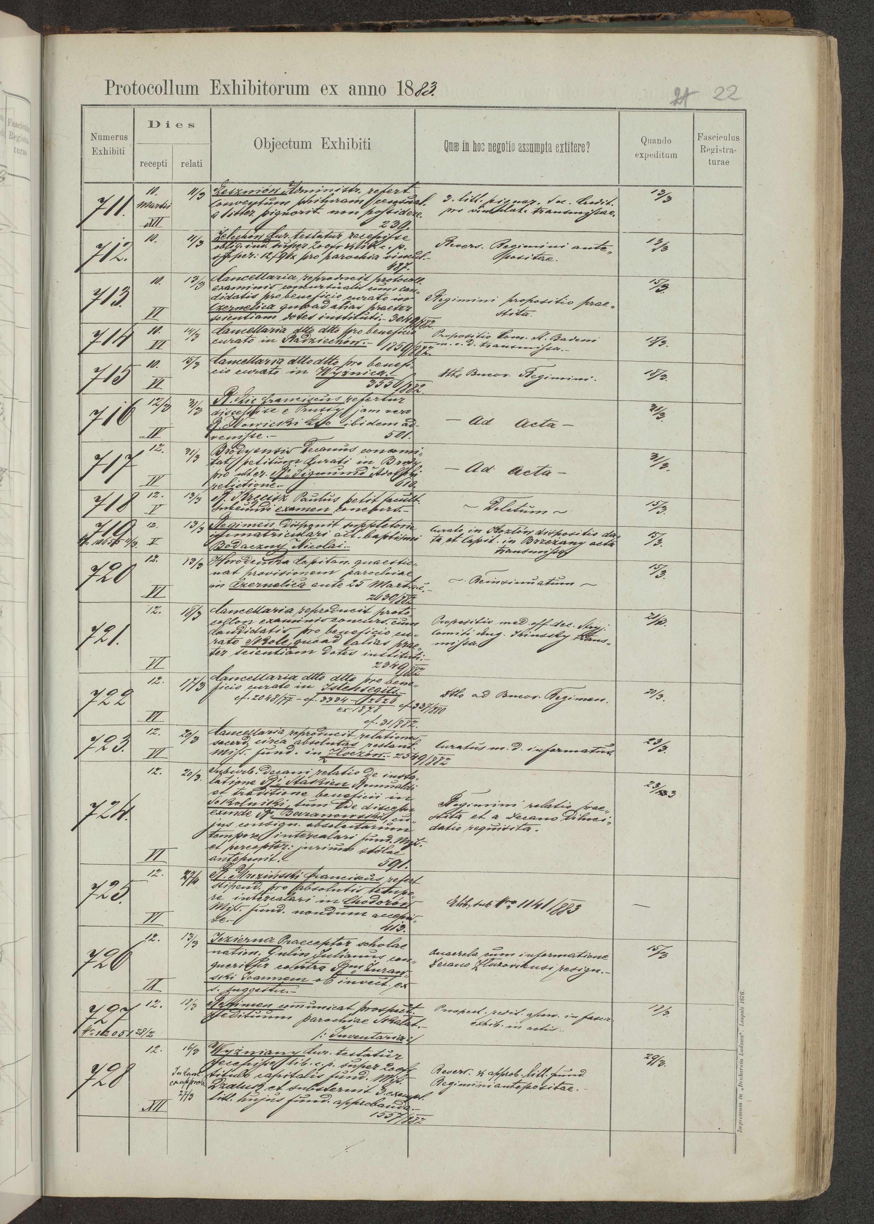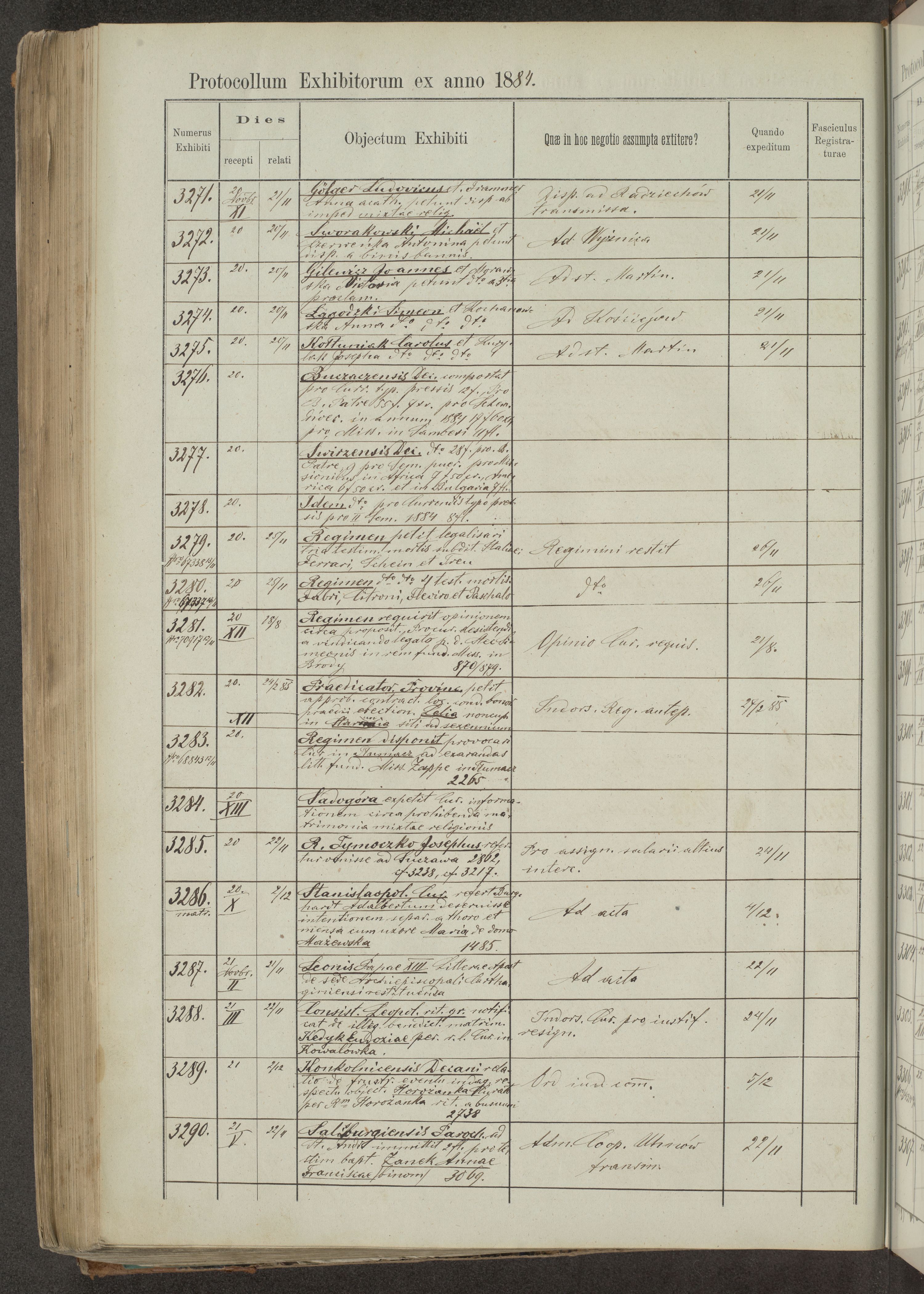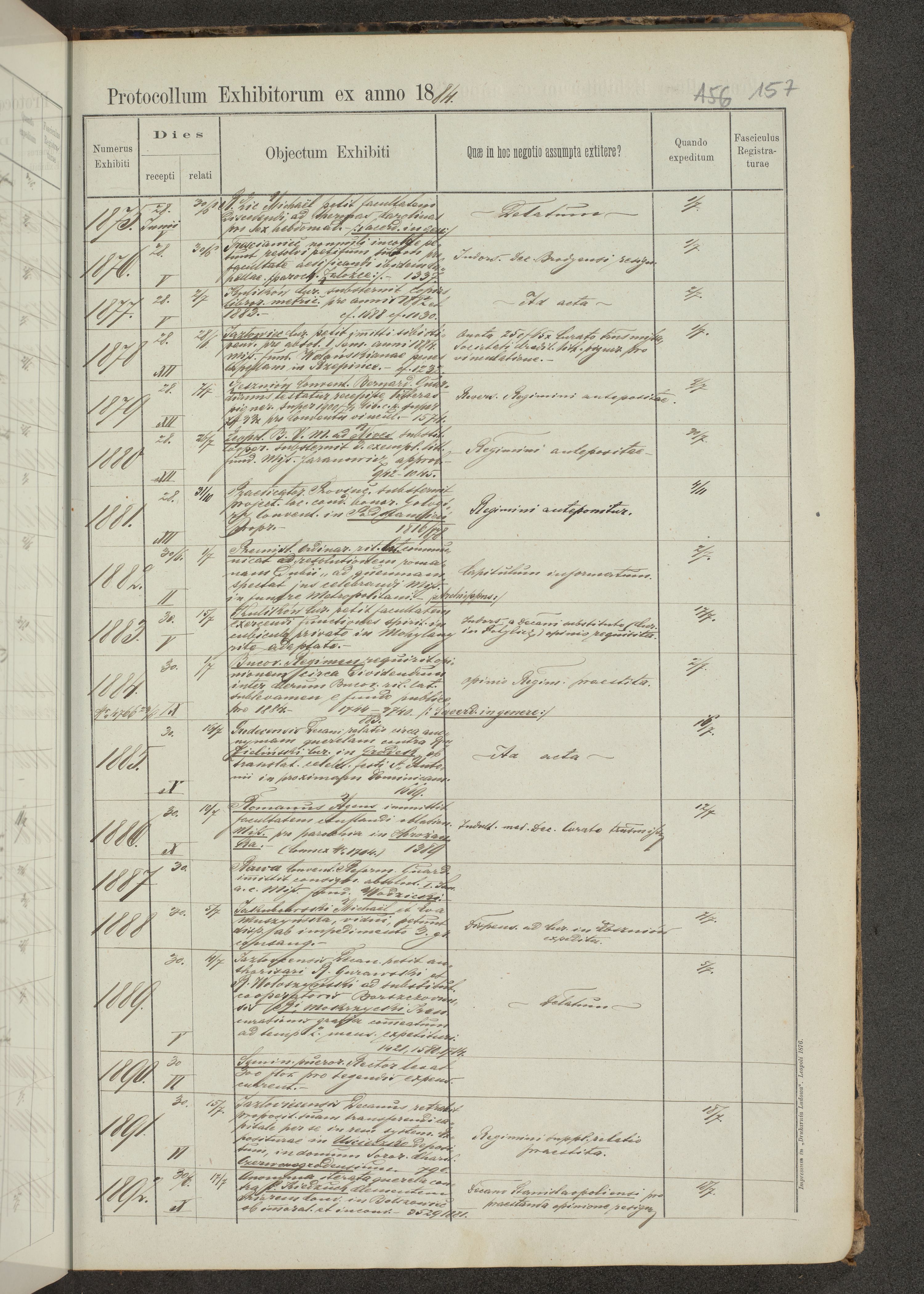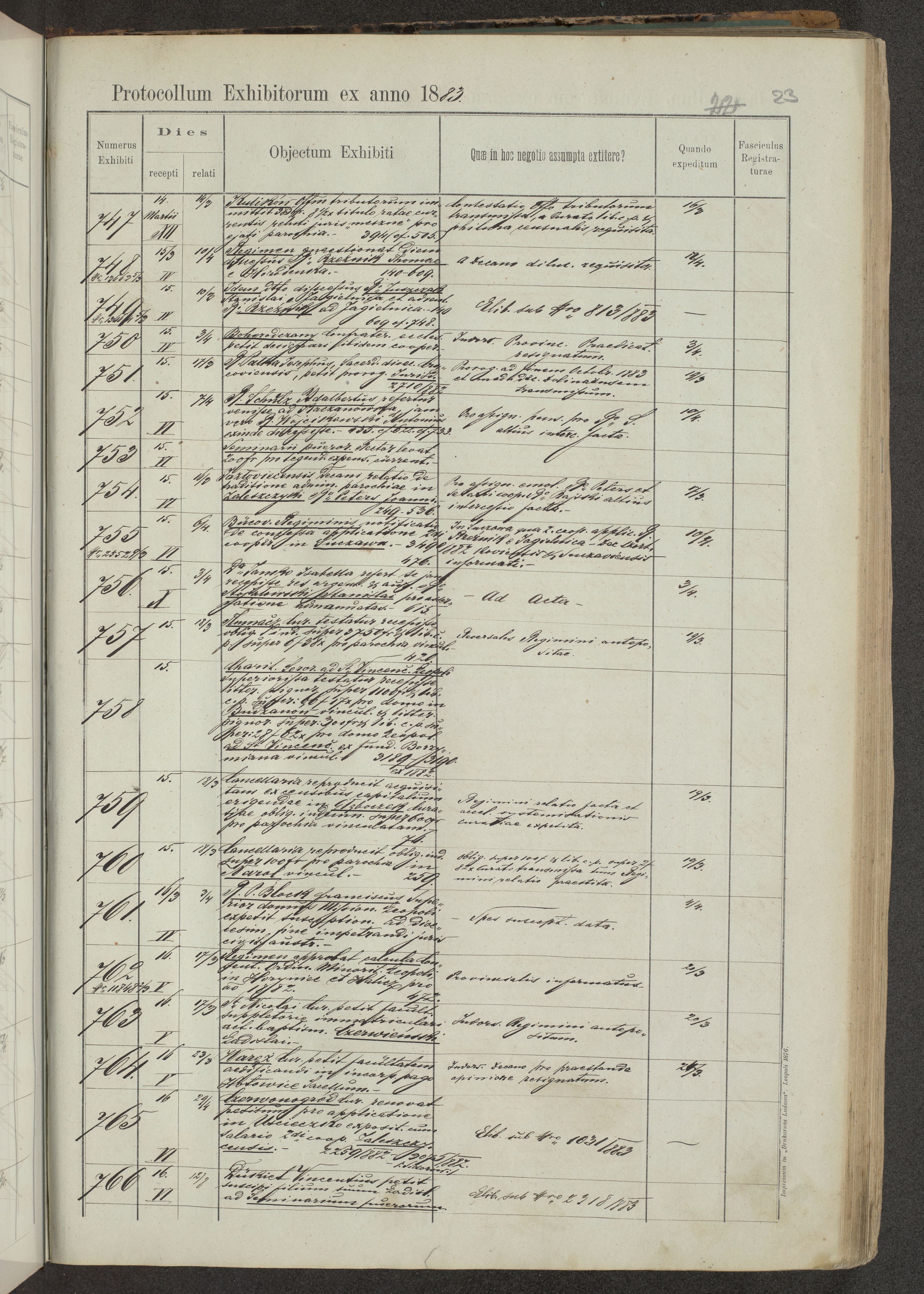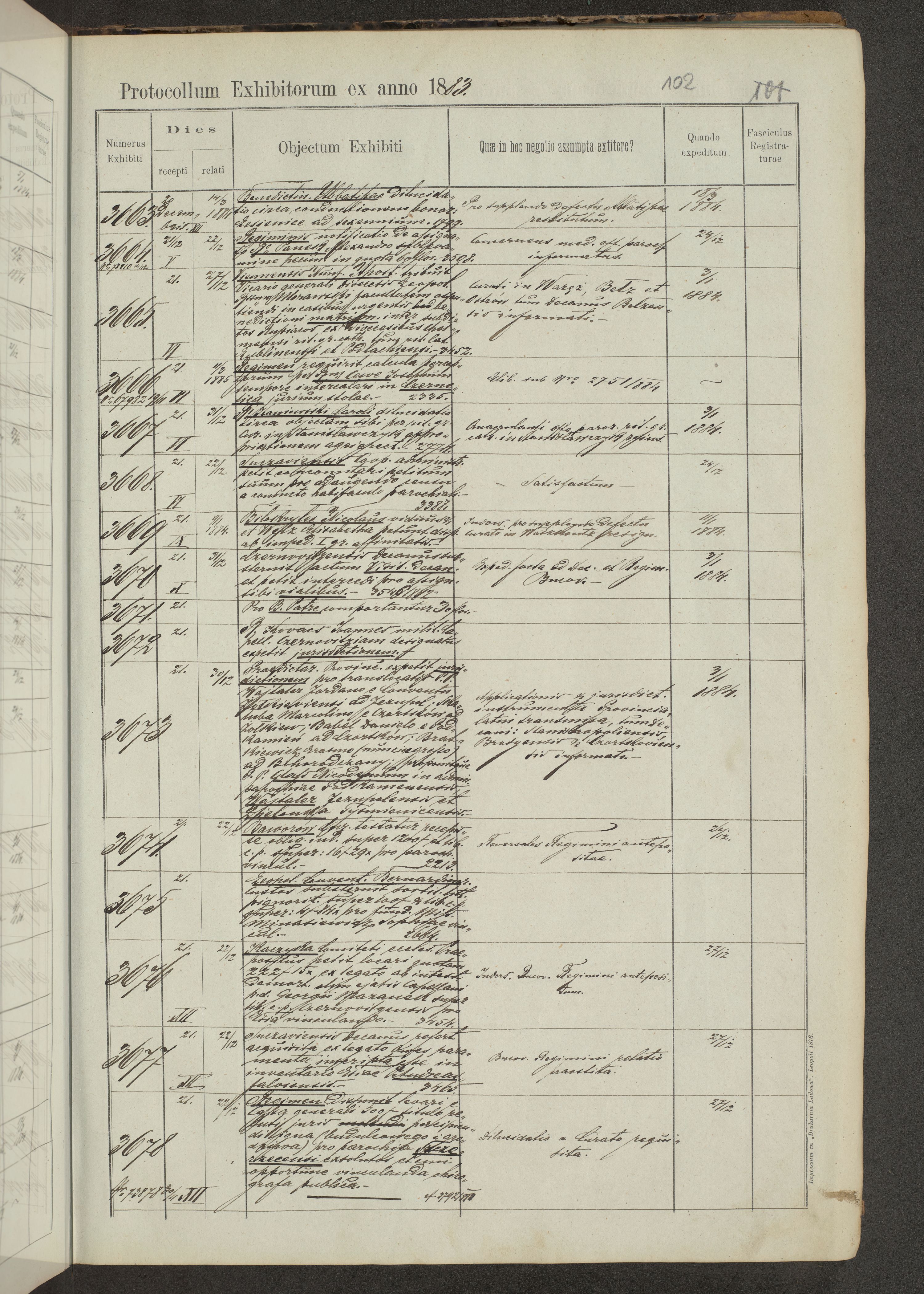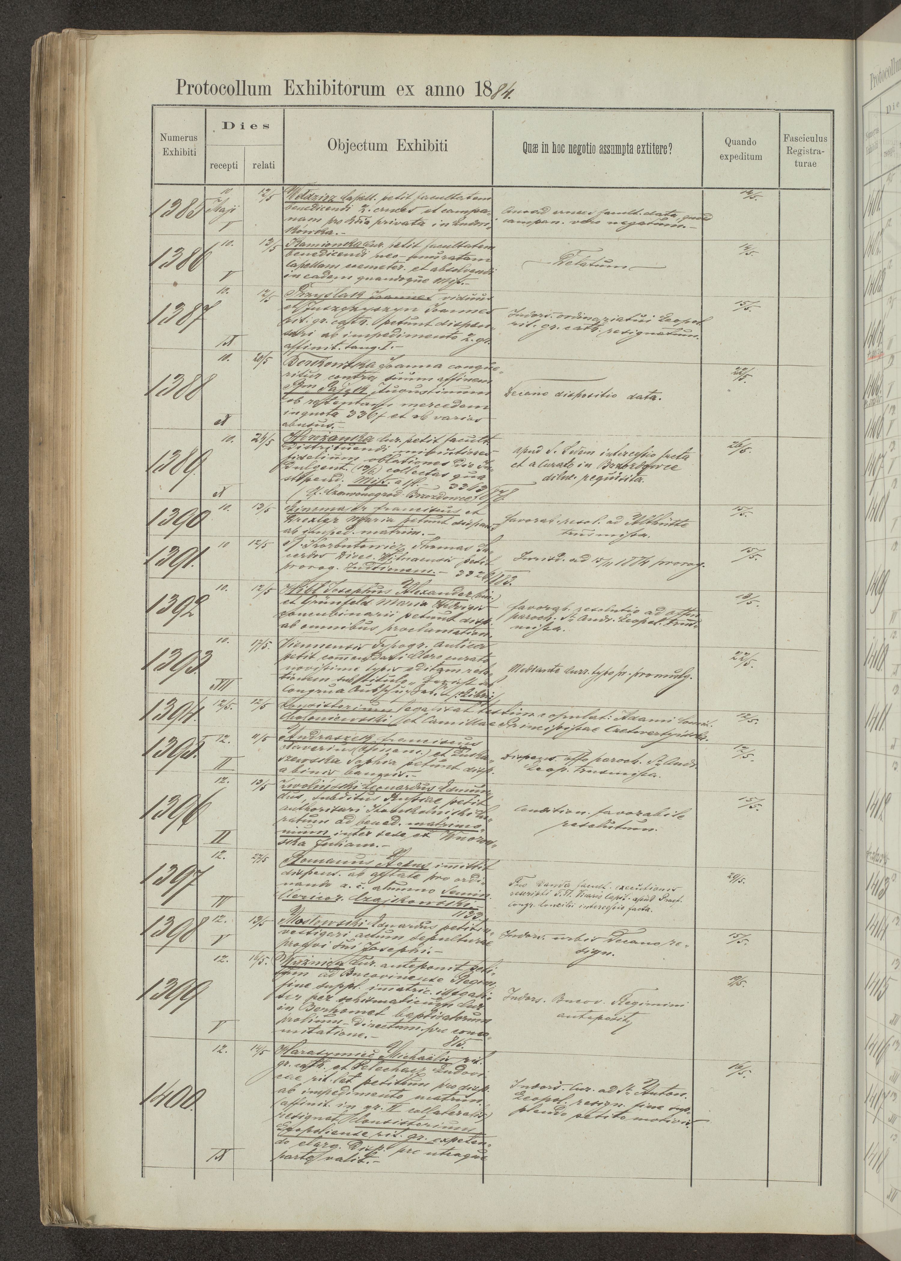 Protocollon exhibitorum in Ecclesiasticis ex anno 1883-1884