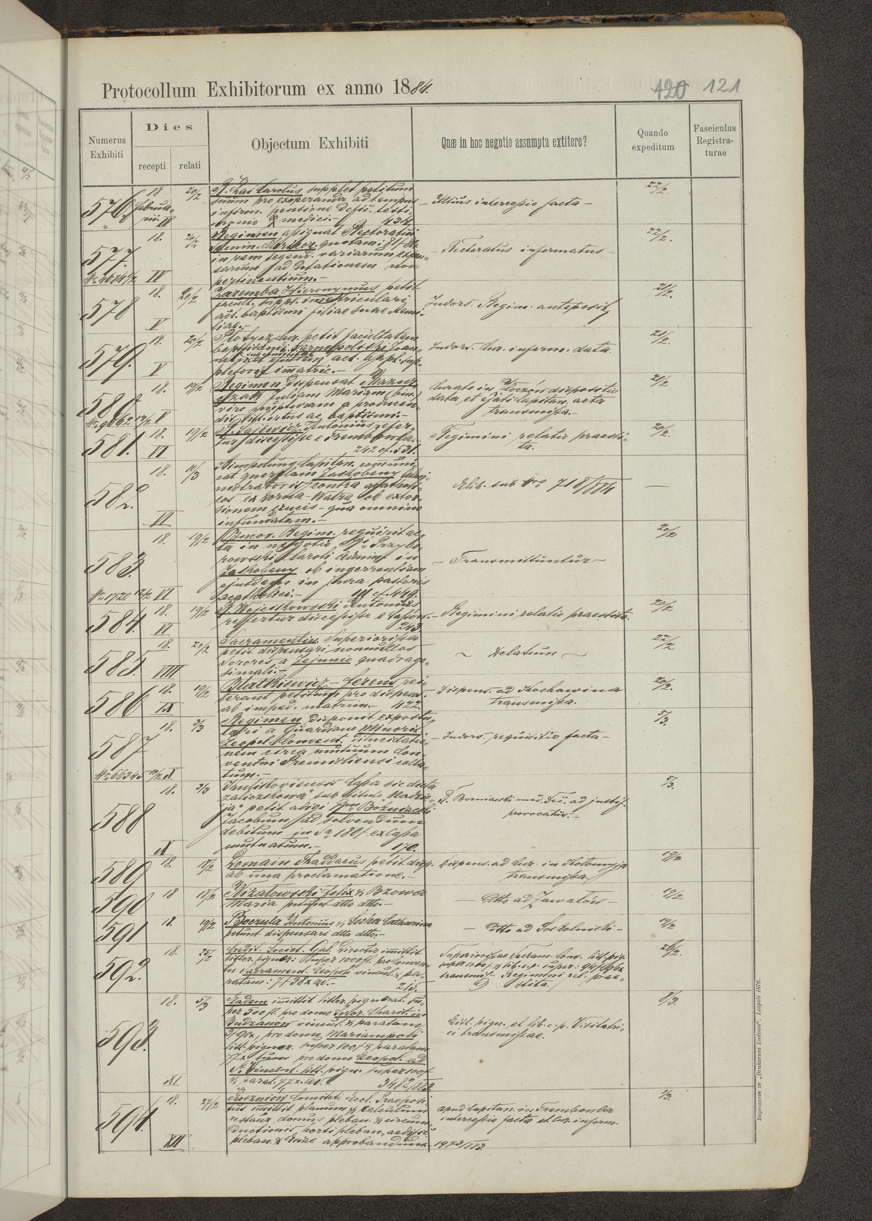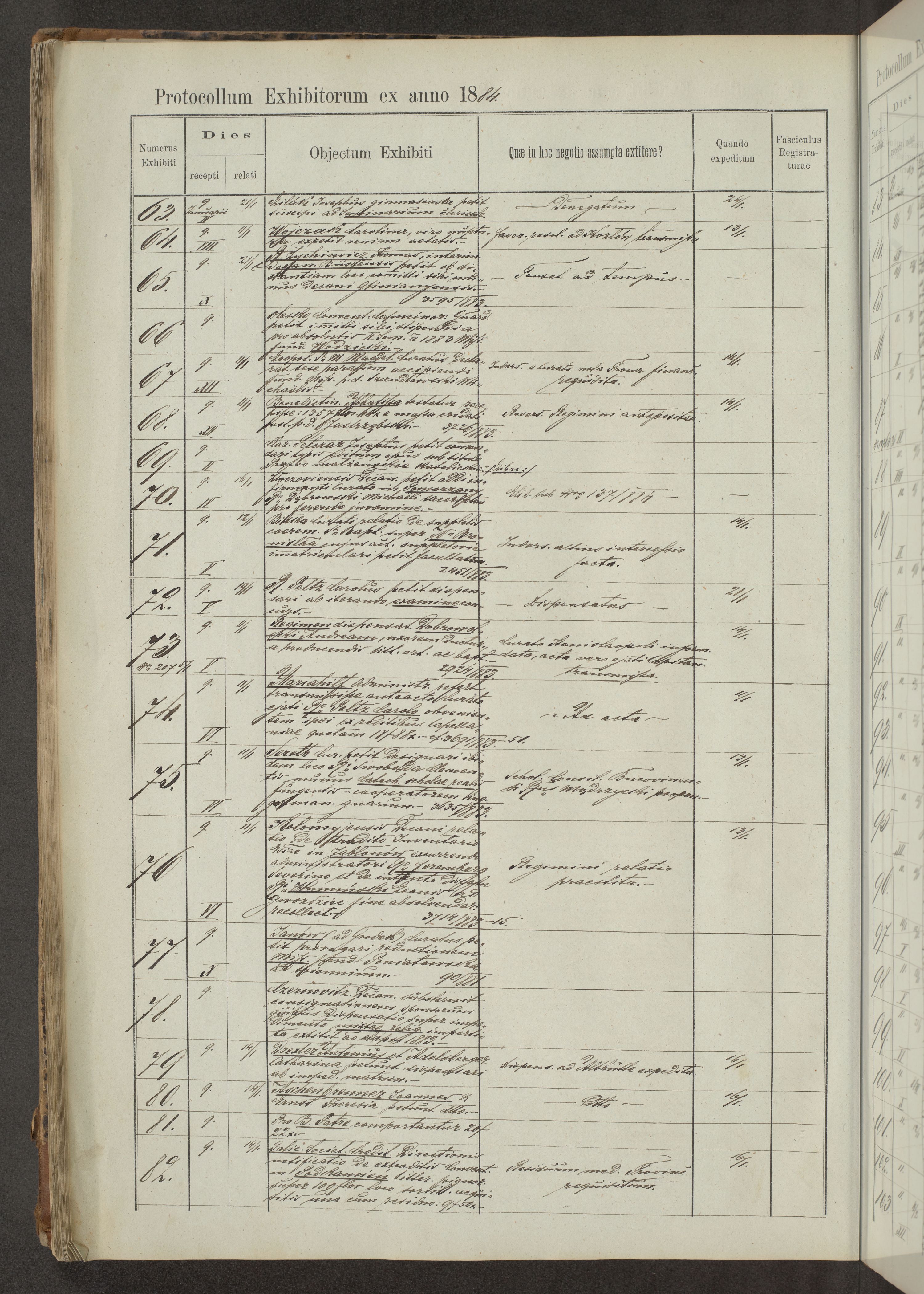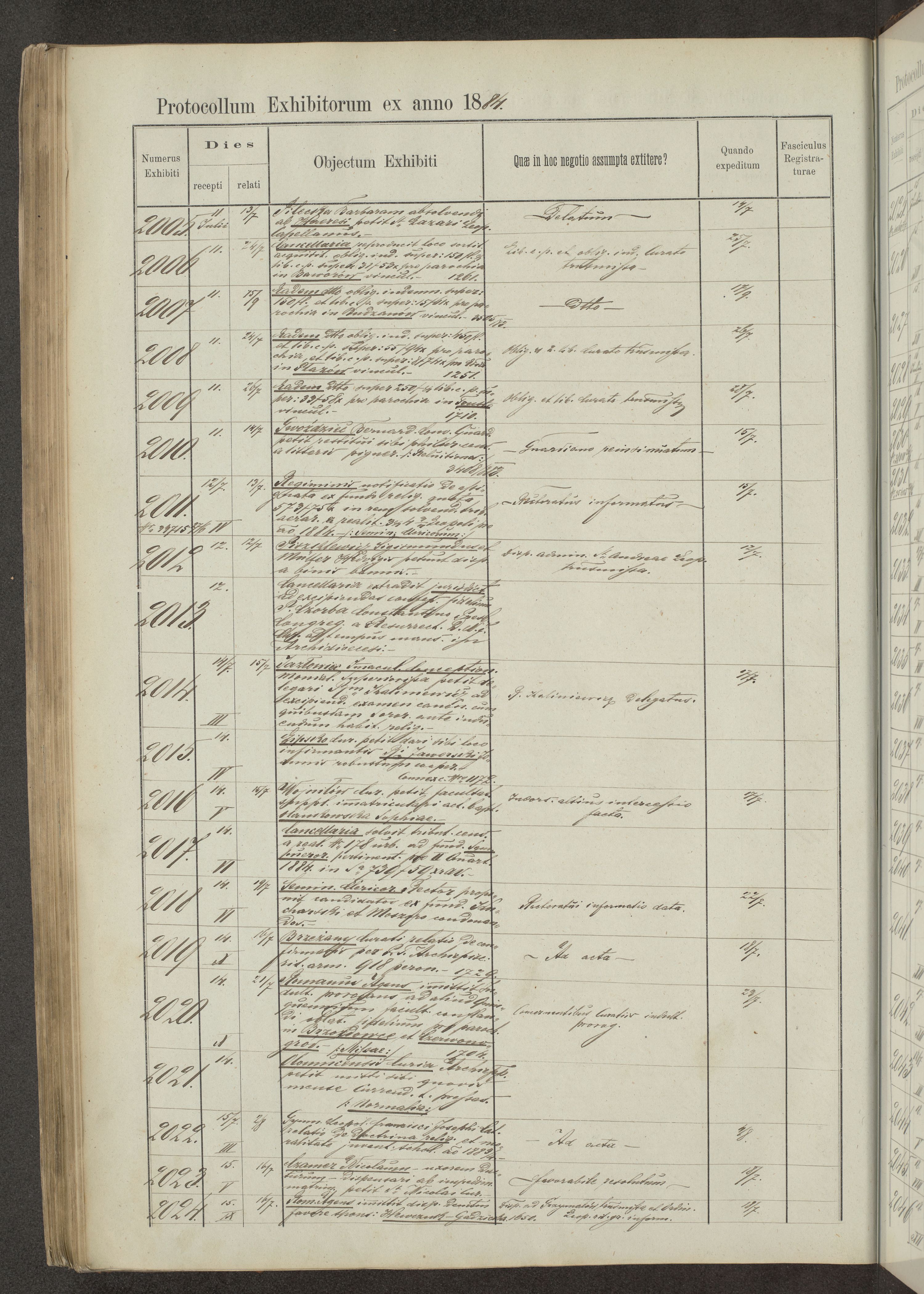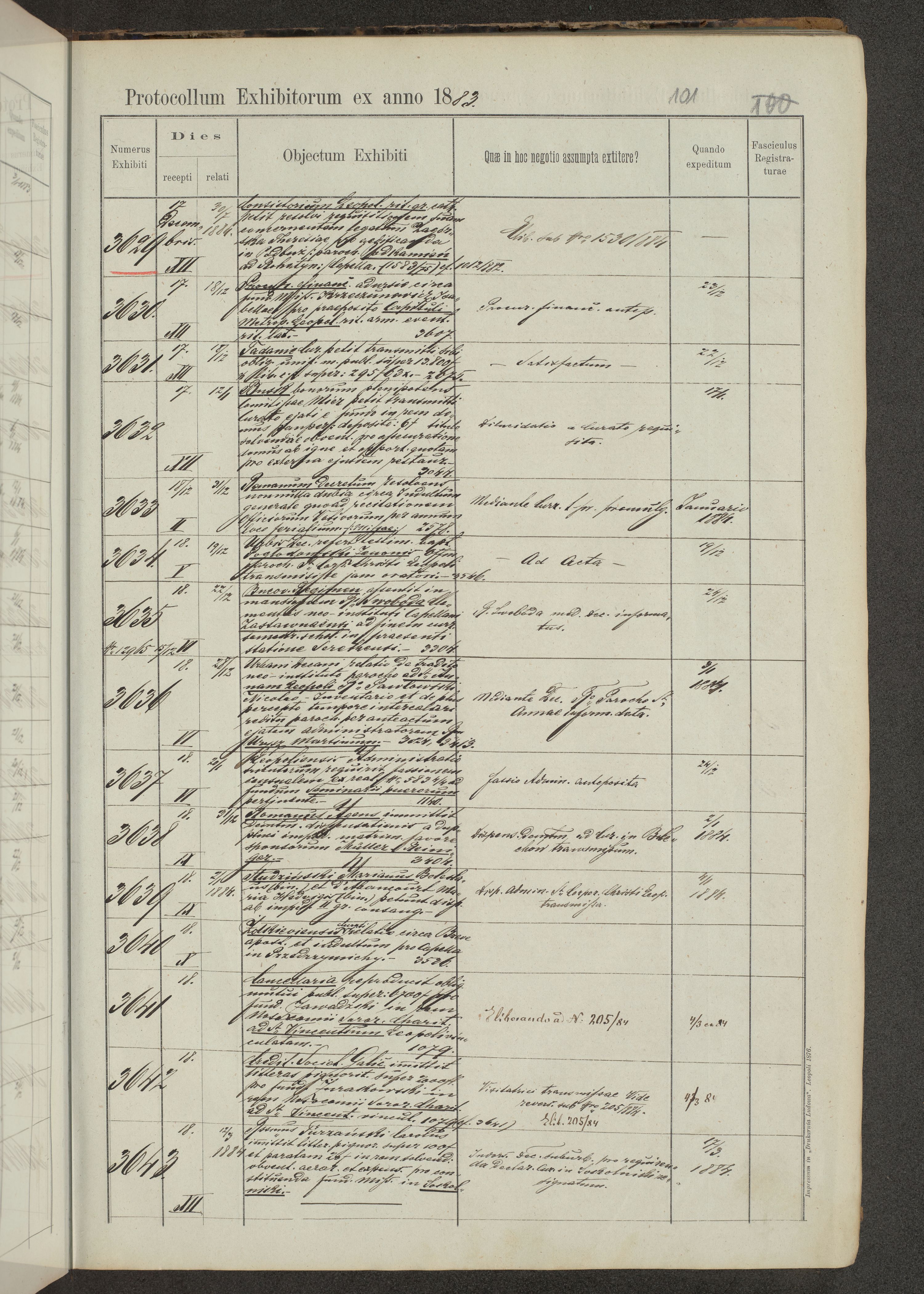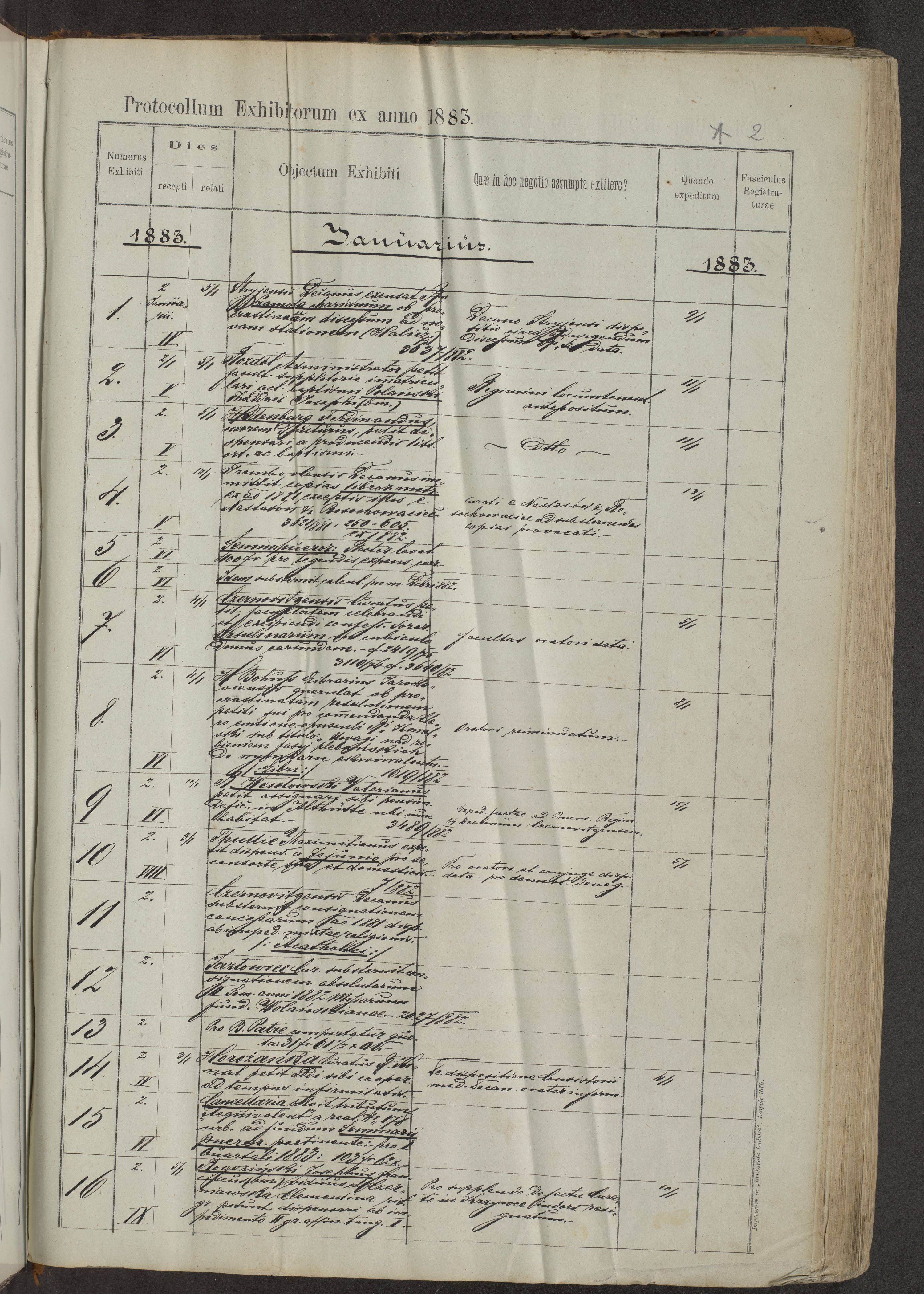 Protocollon exhibitorum in Ecclesiasticis ex anno 1883-1884