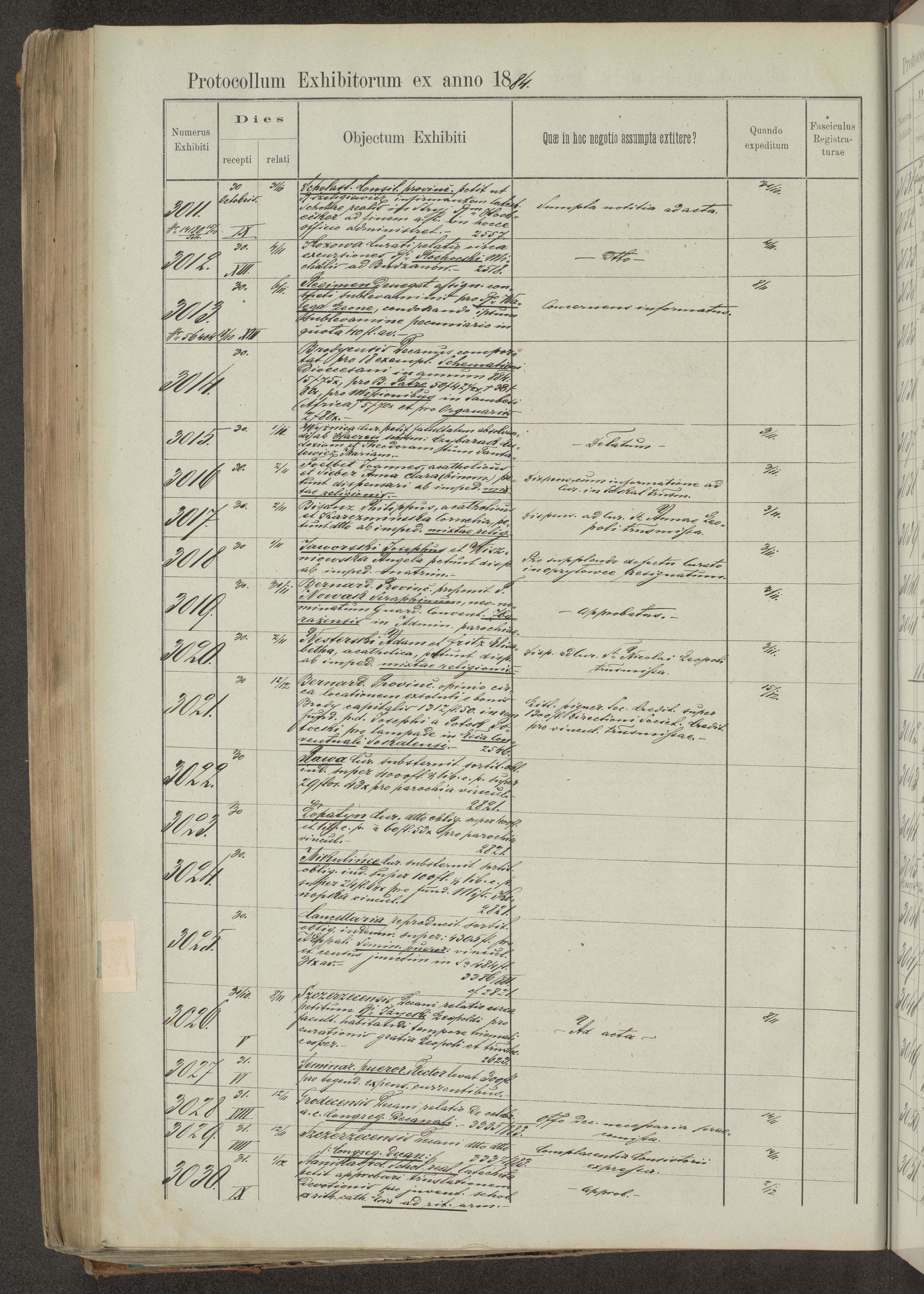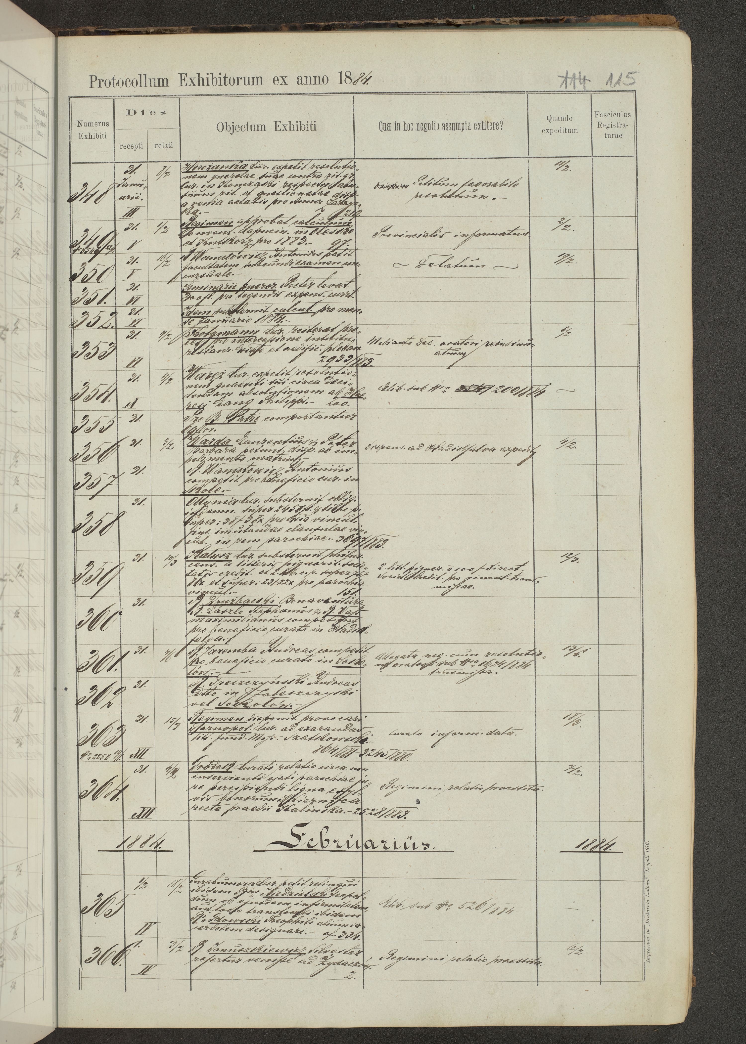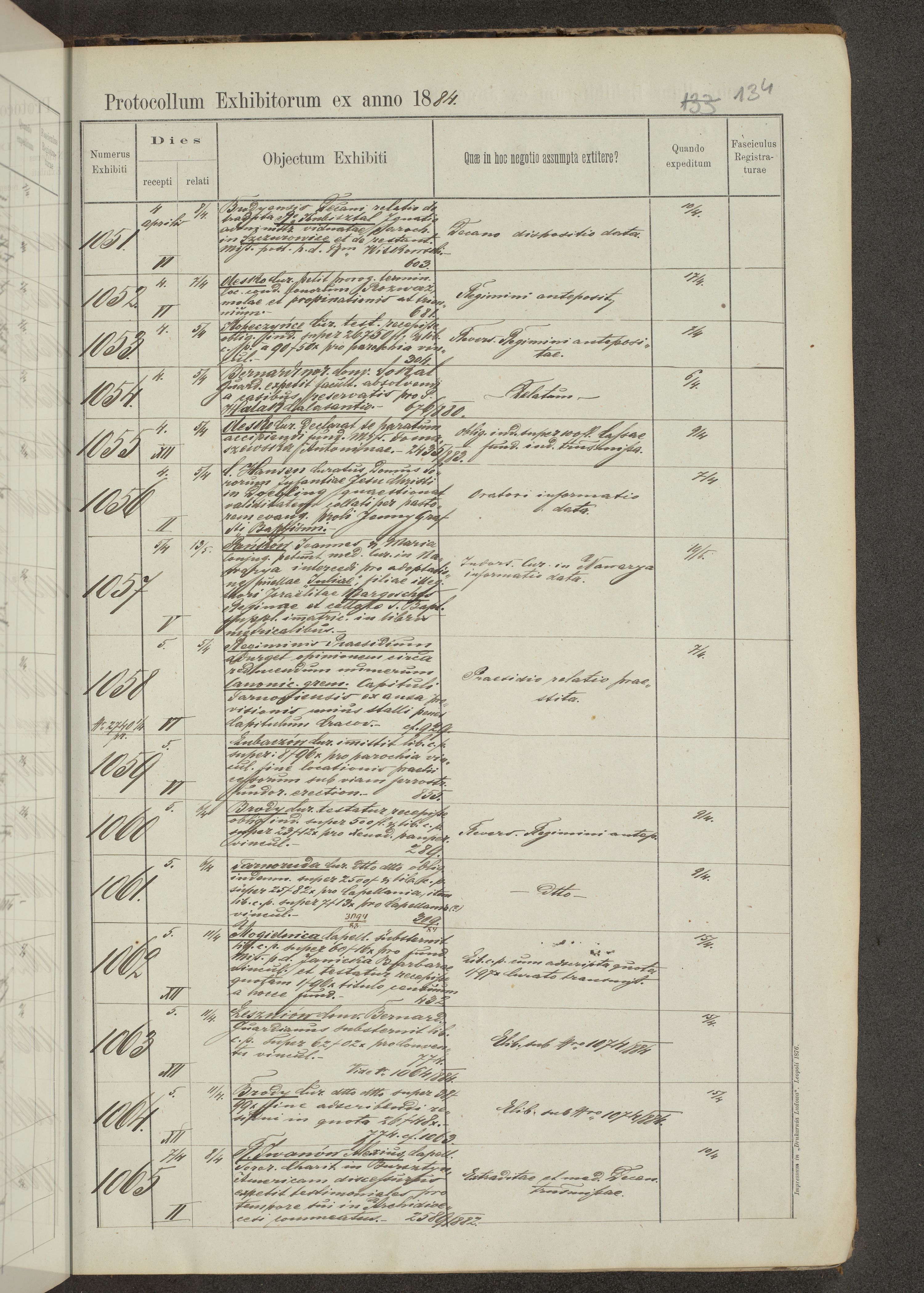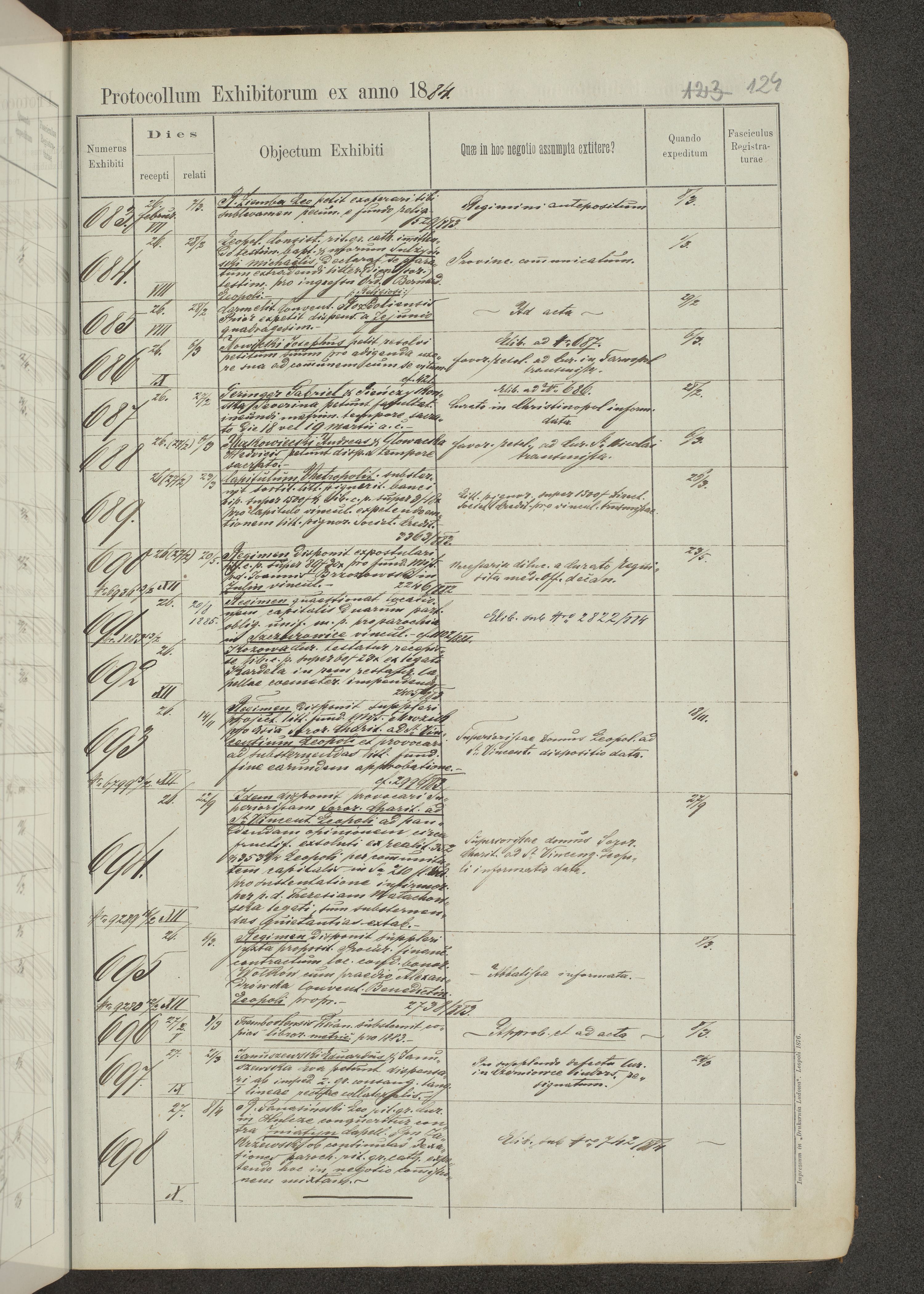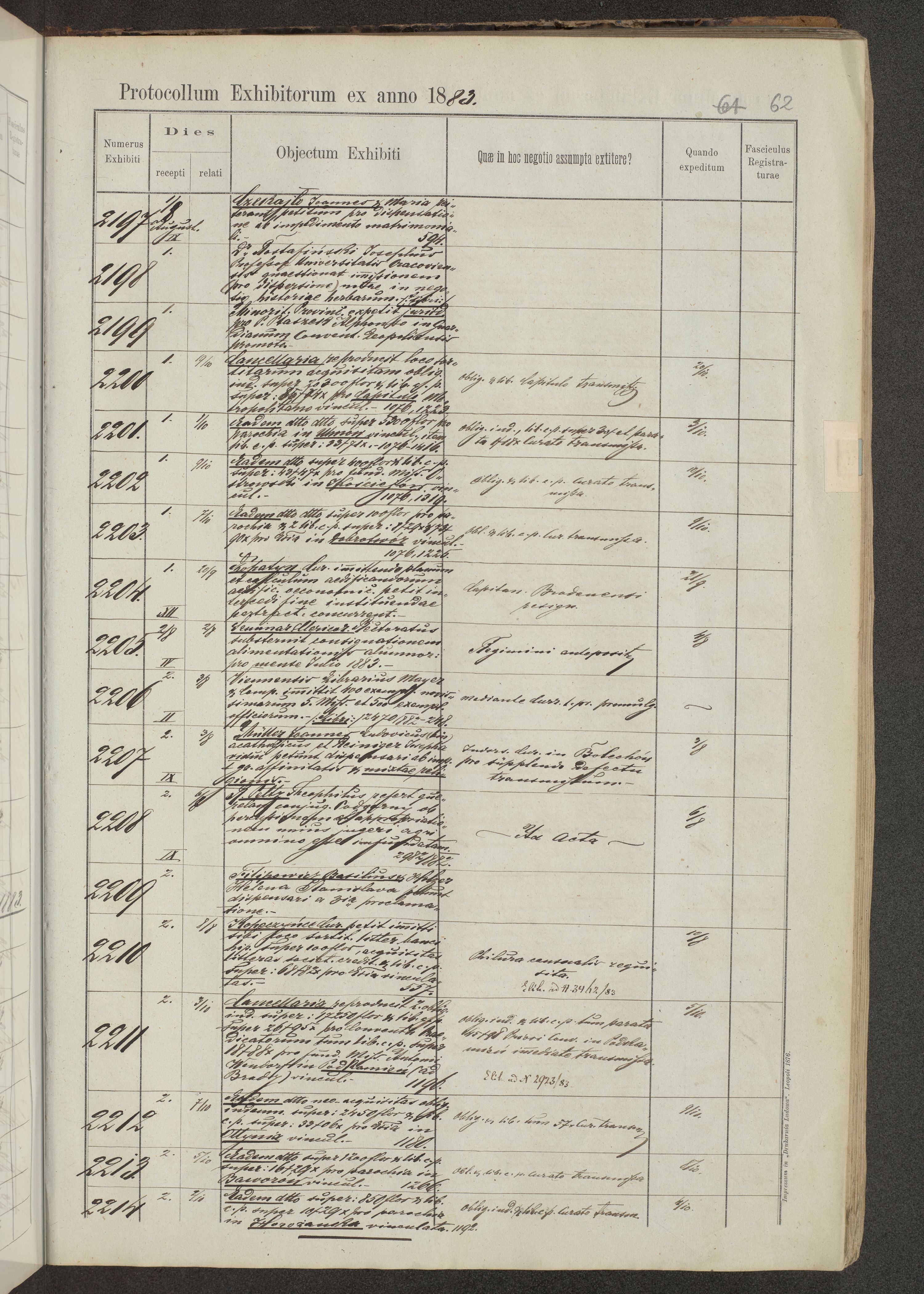 Protocollon exhibitorum in Ecclesiasticis ex anno 1883-1884