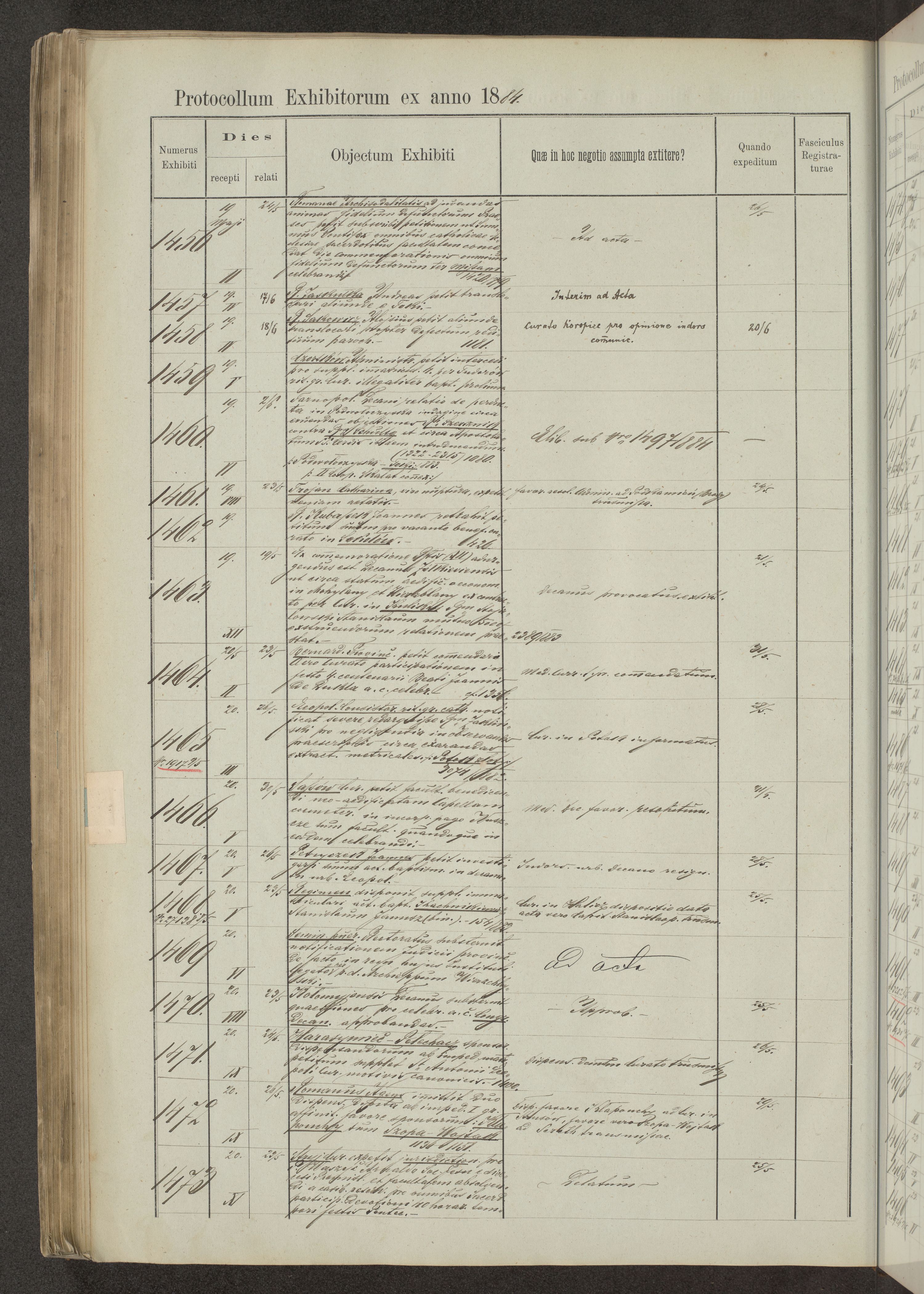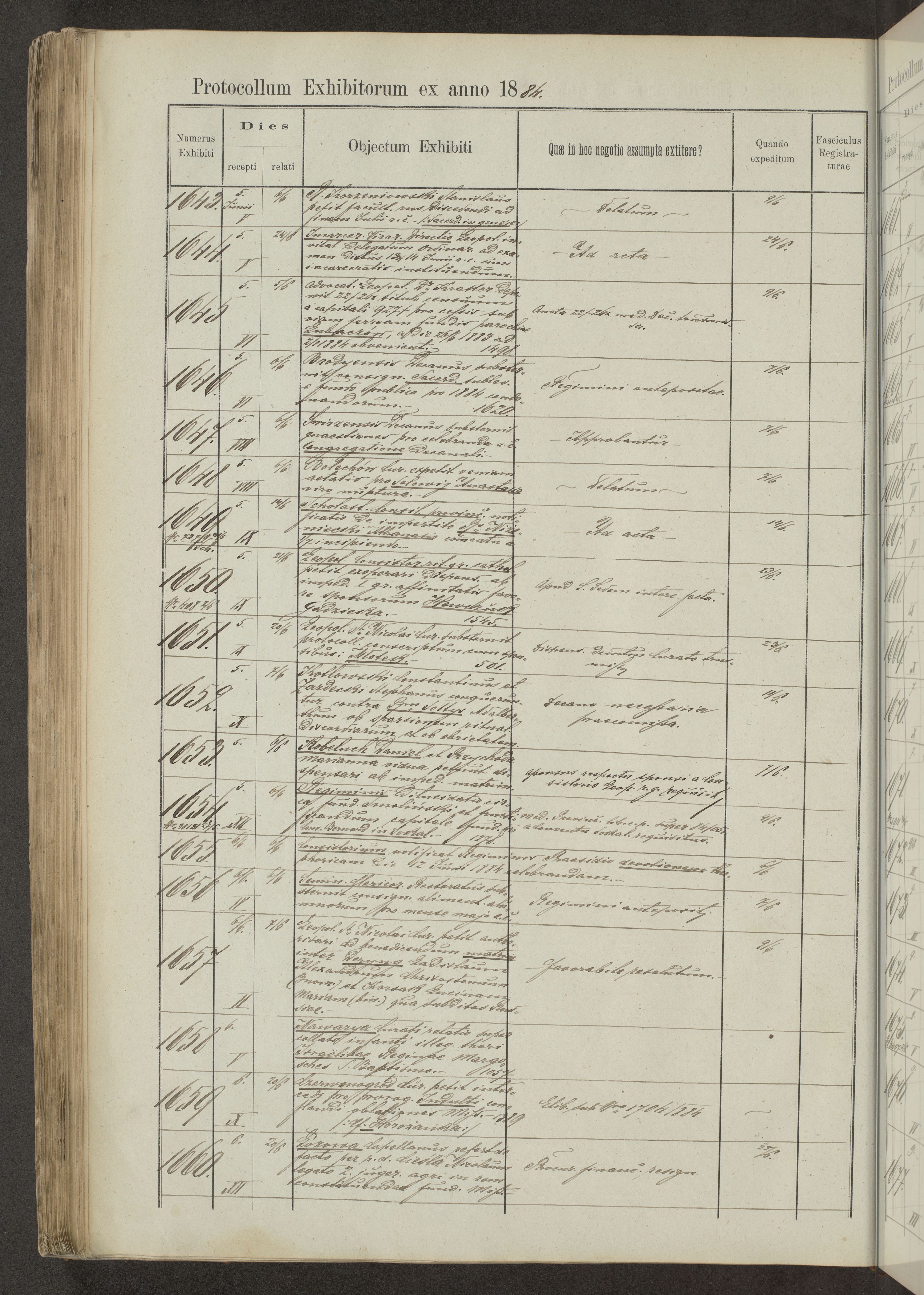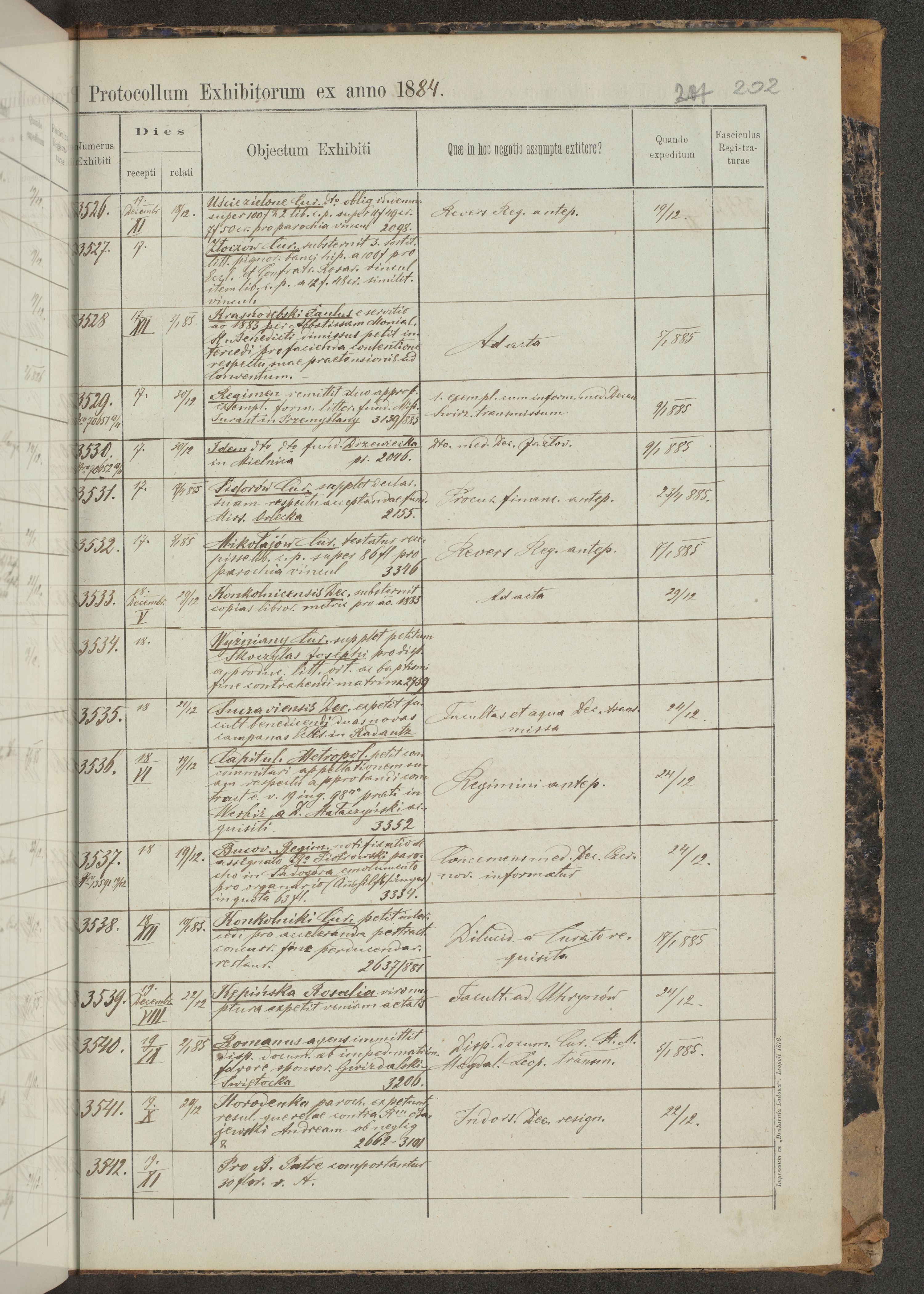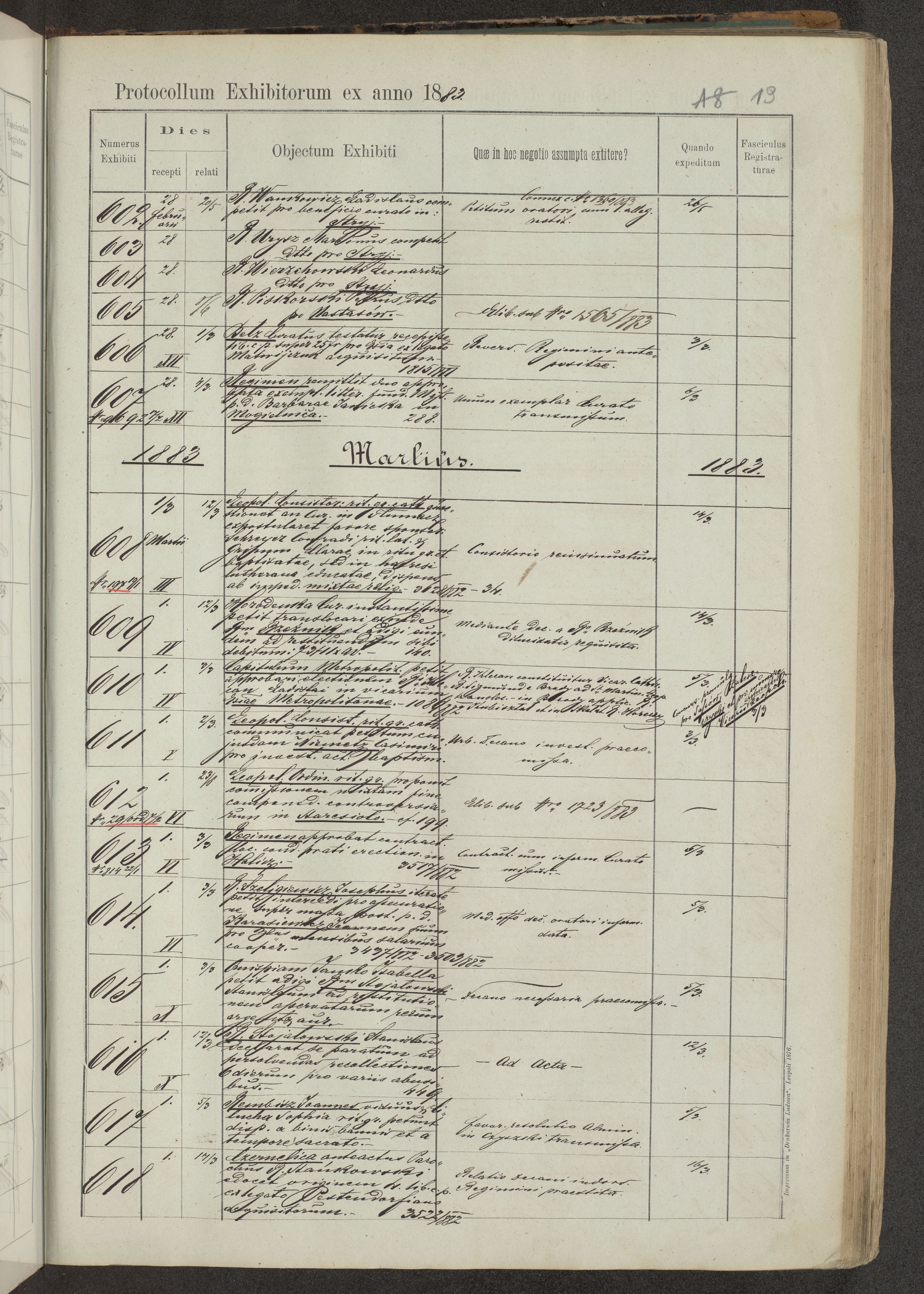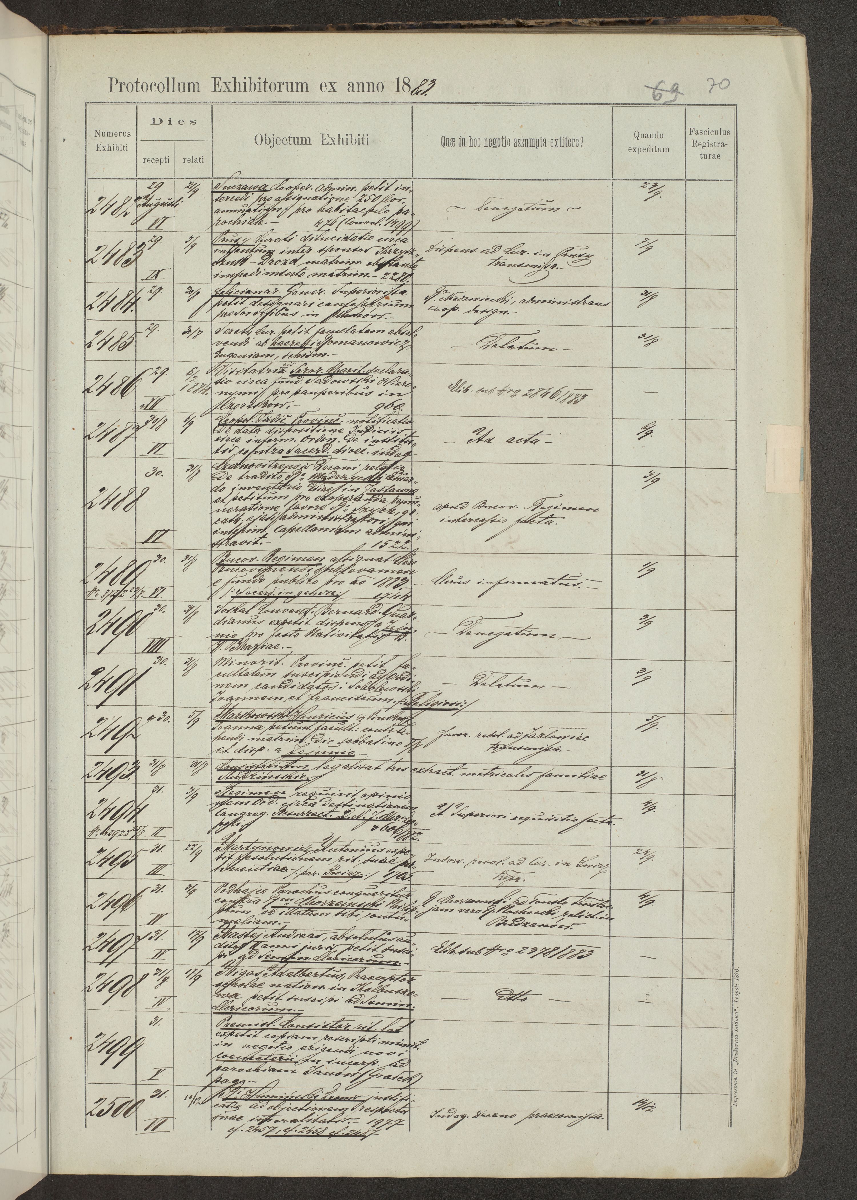 Protocollon exhibitorum in Ecclesiasticis ex anno 1883-1884