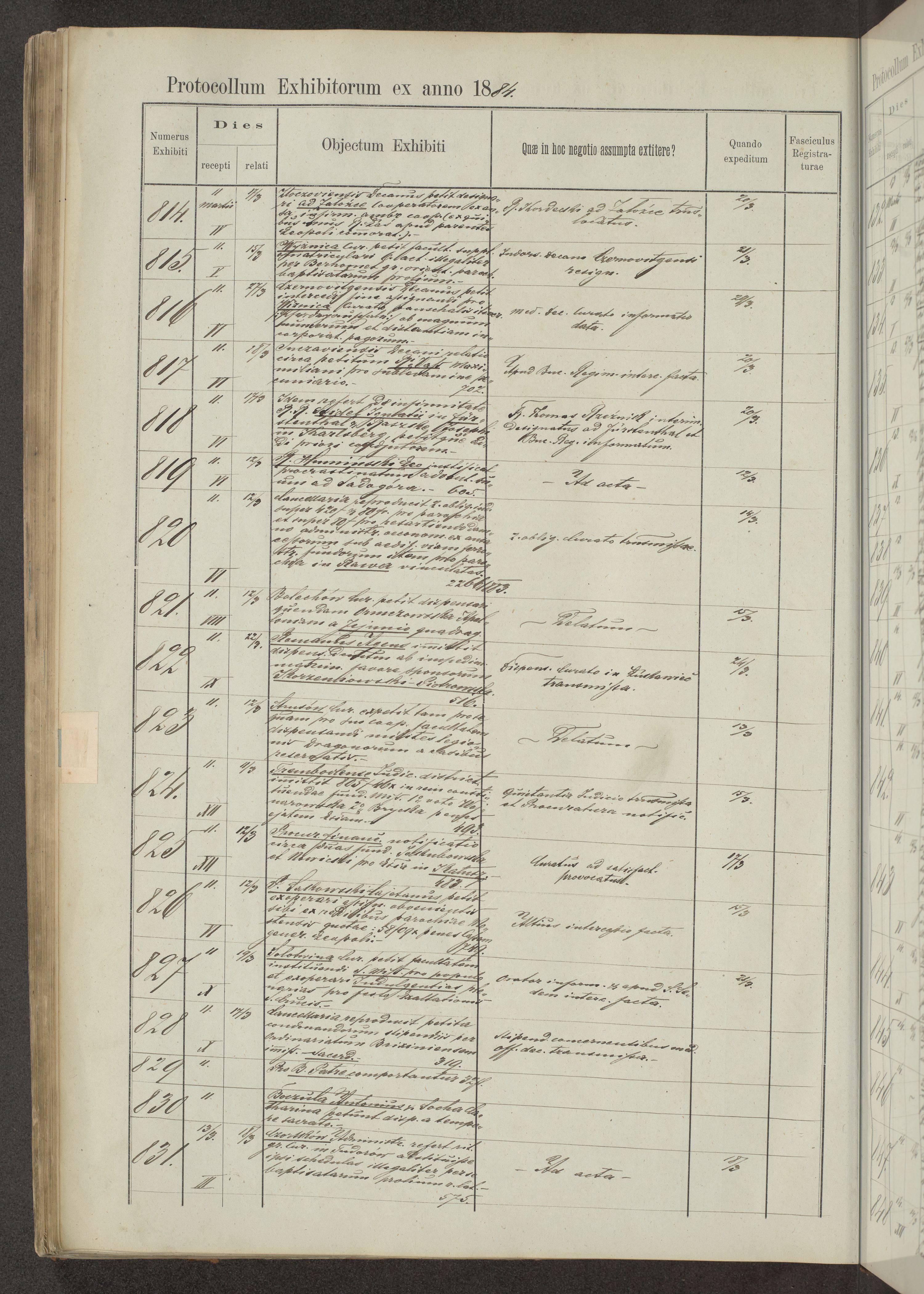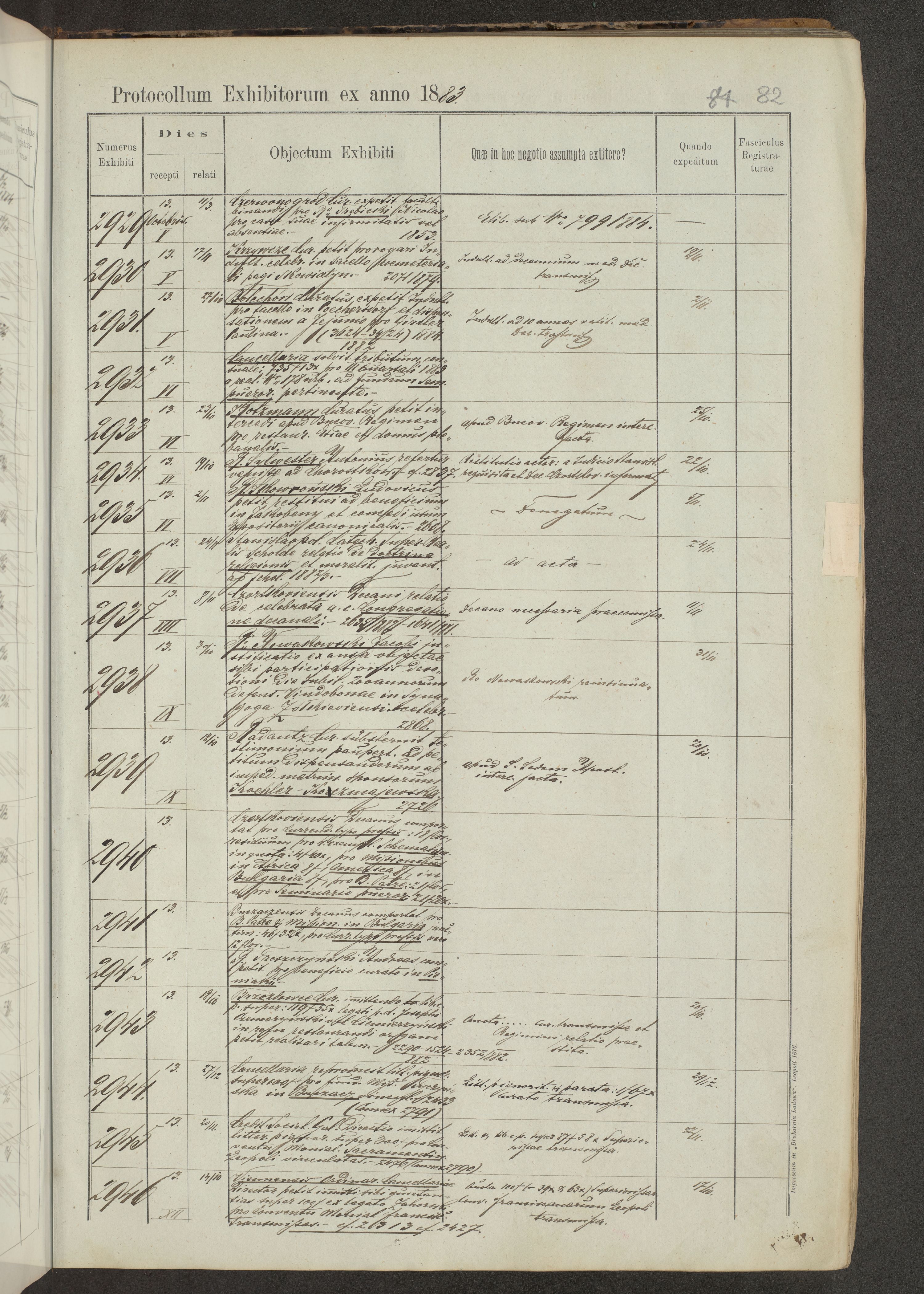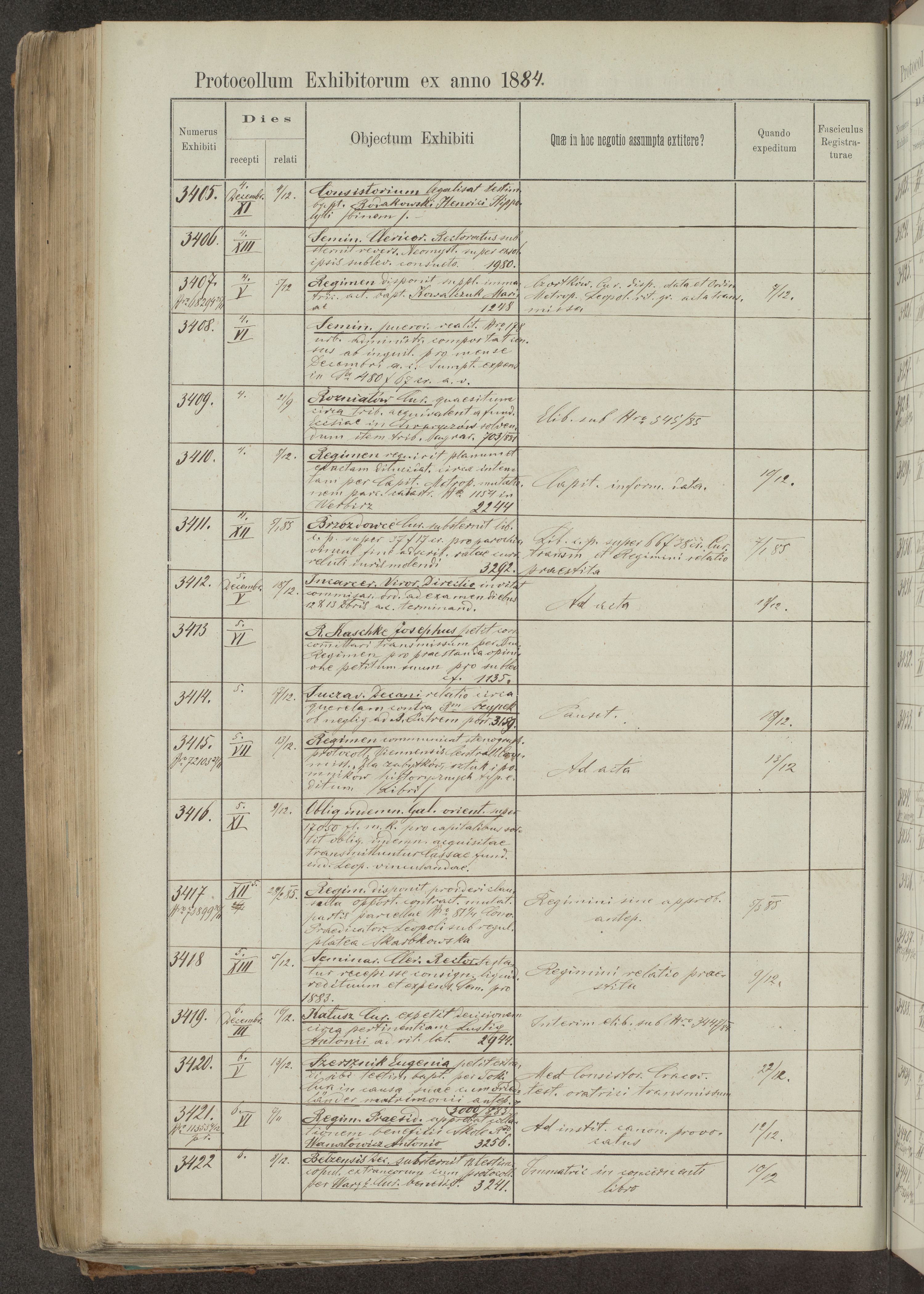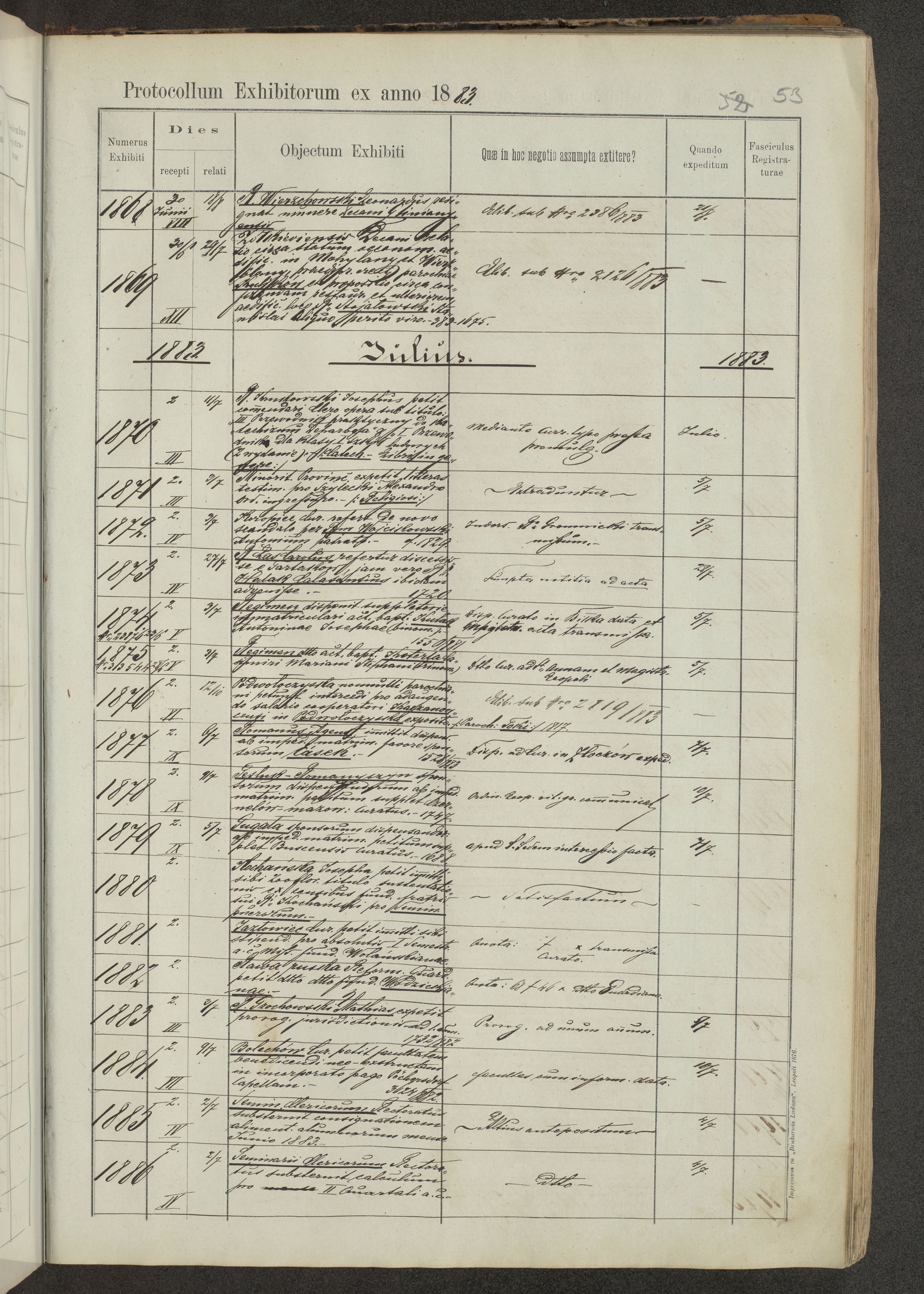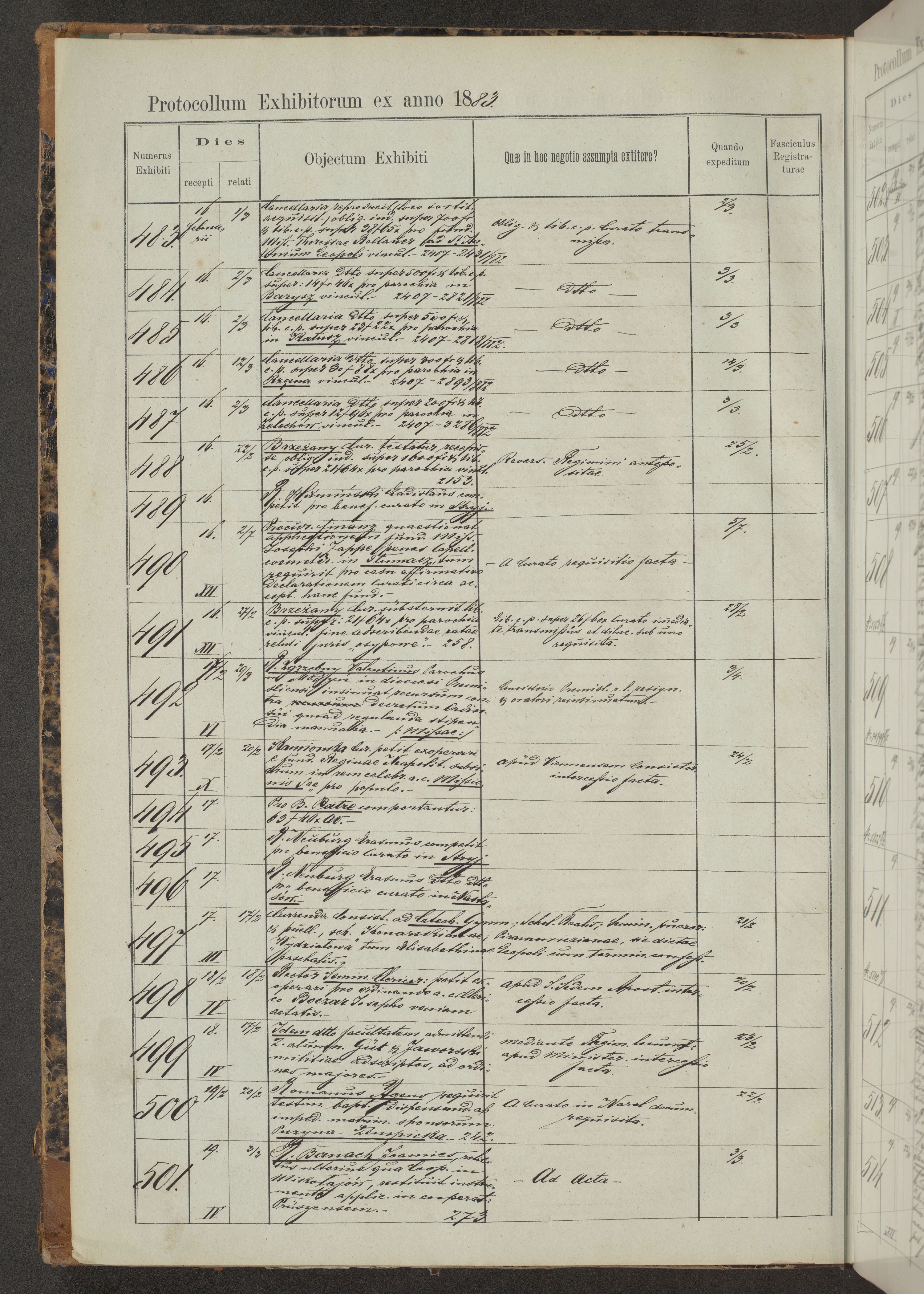 Protocollon exhibitorum in Ecclesiasticis ex anno 1883-1884