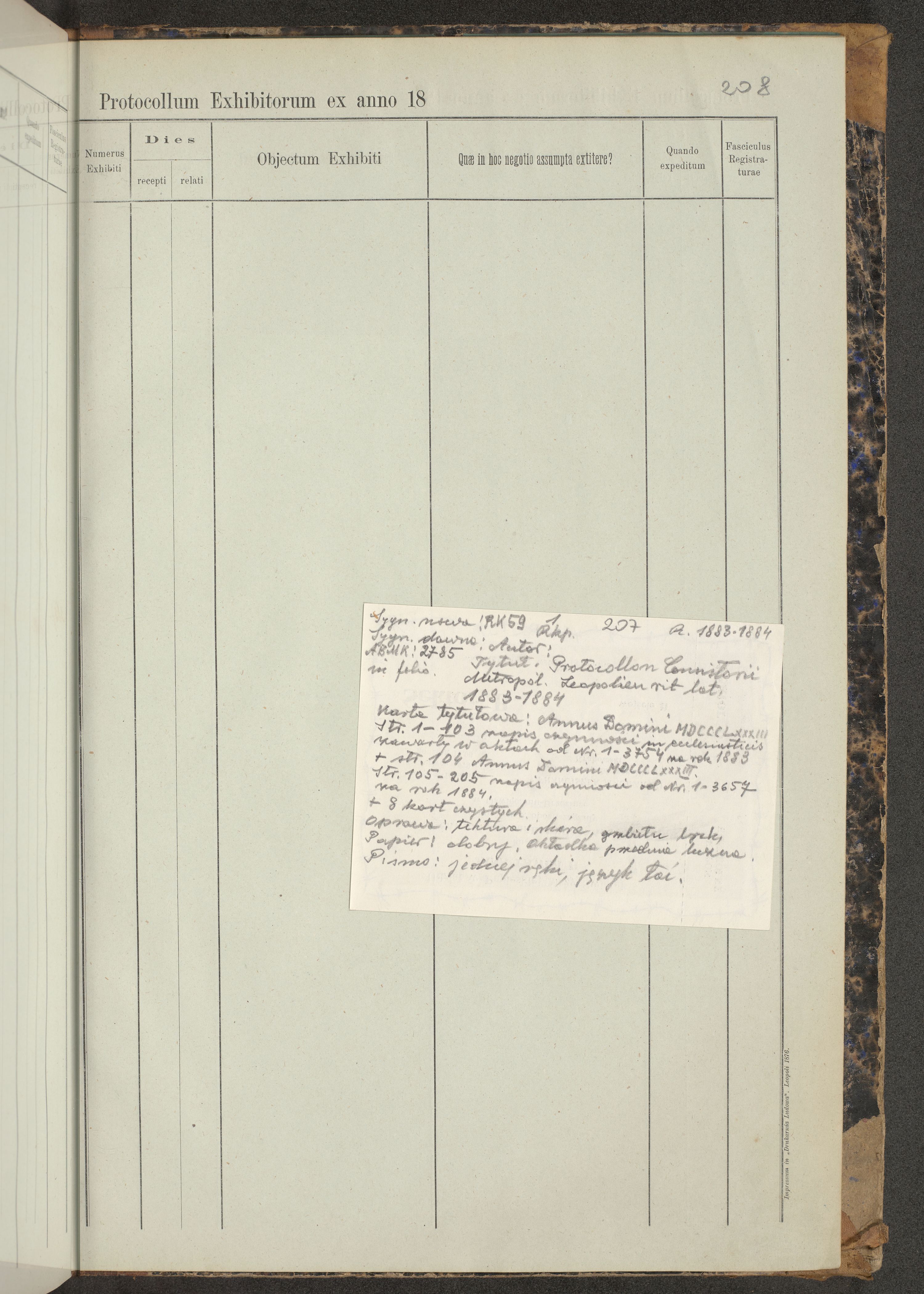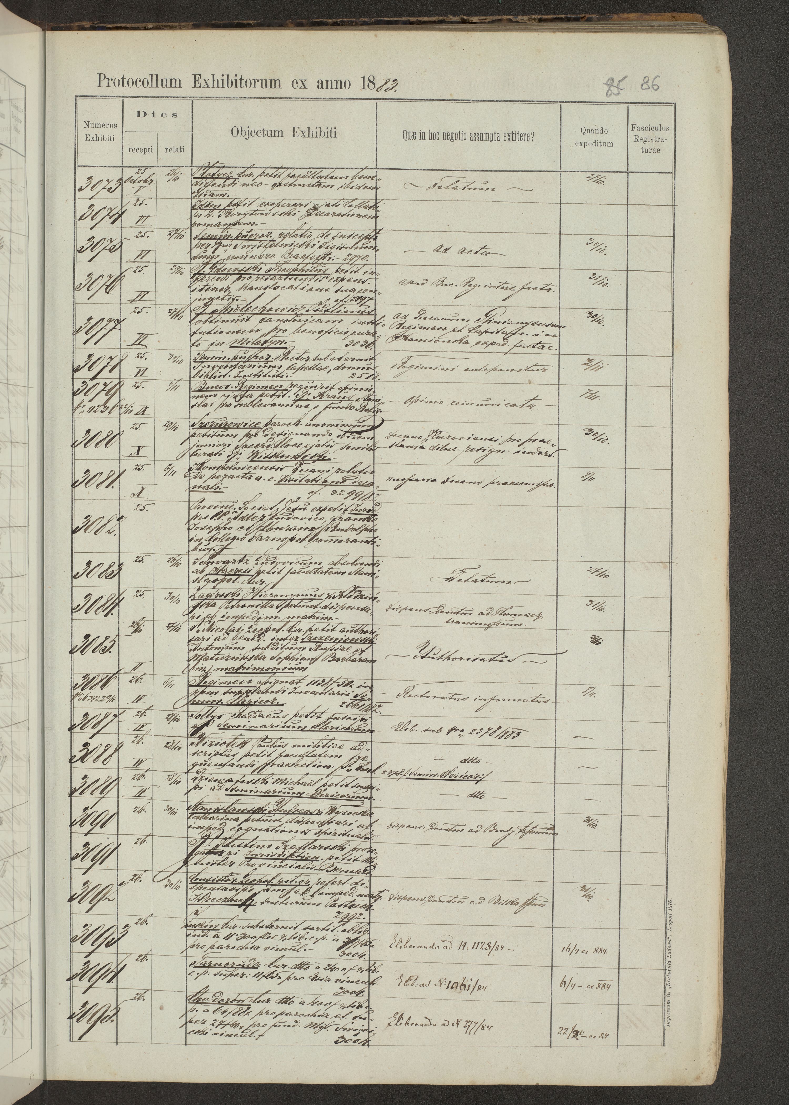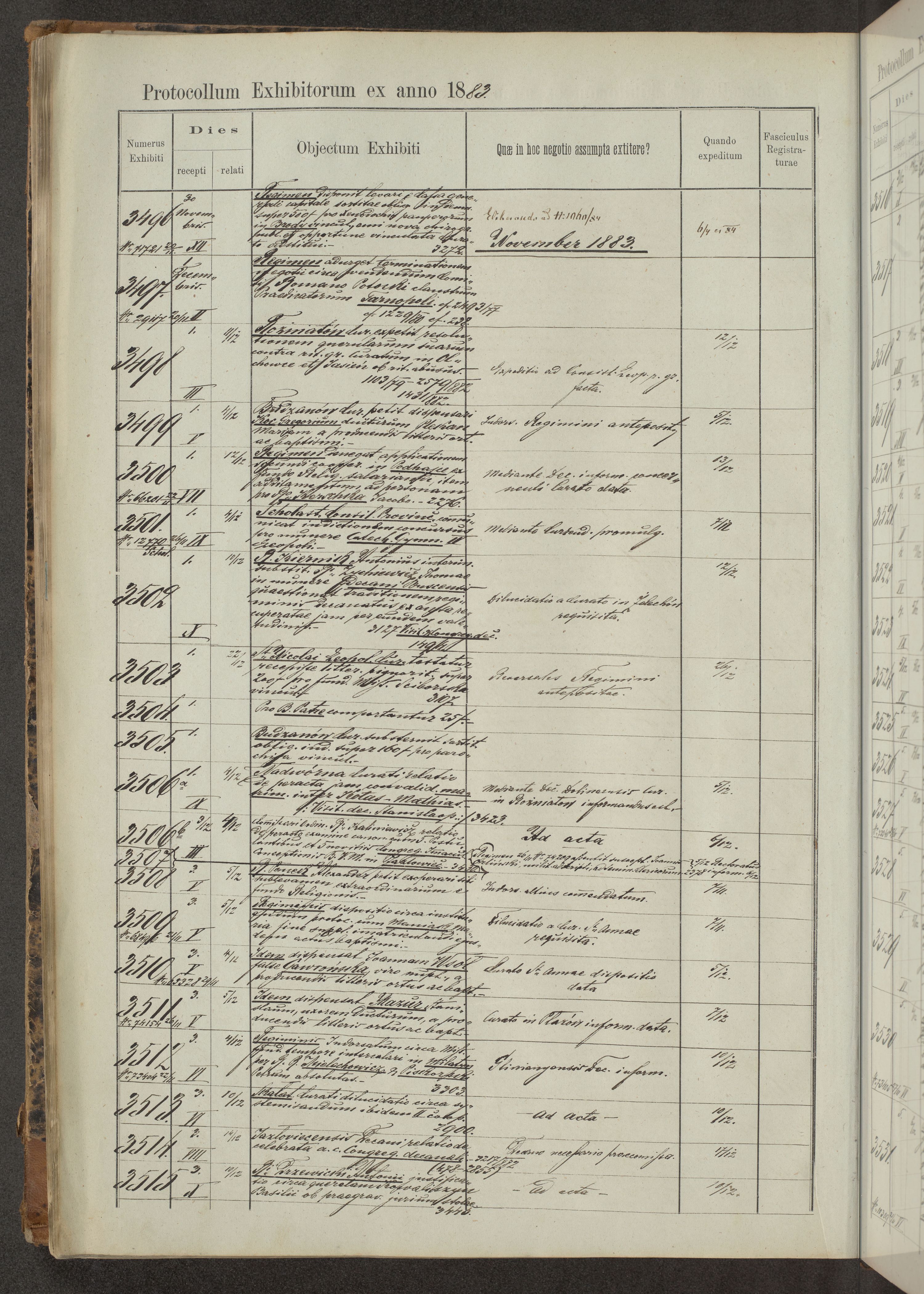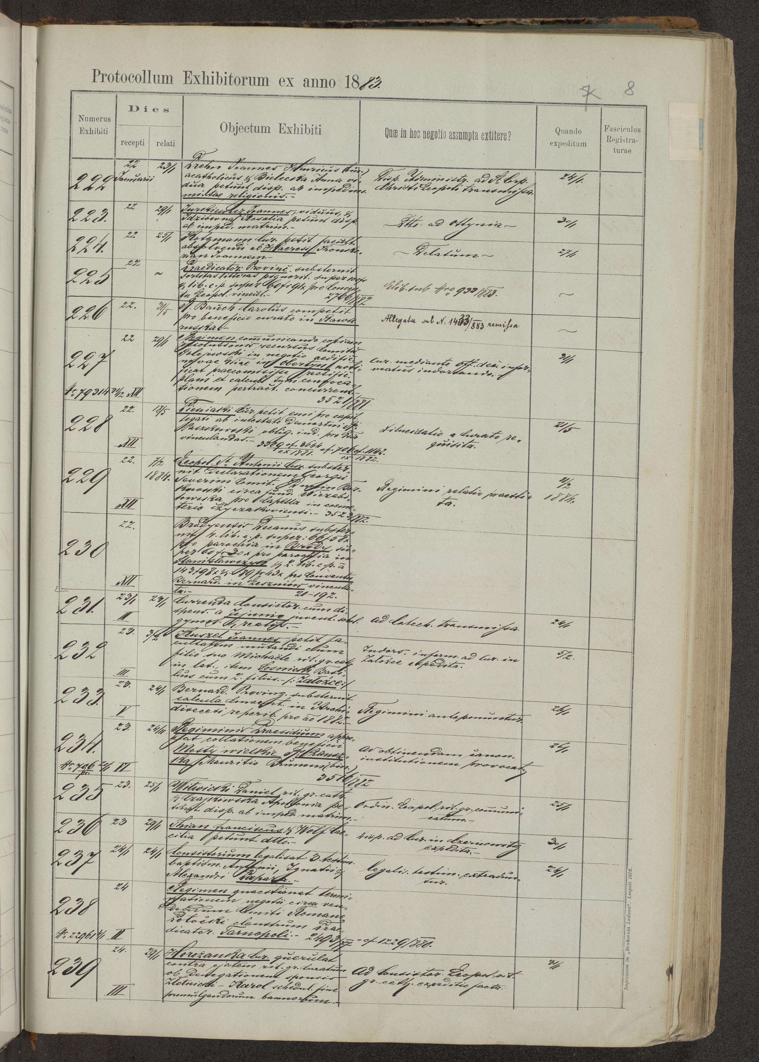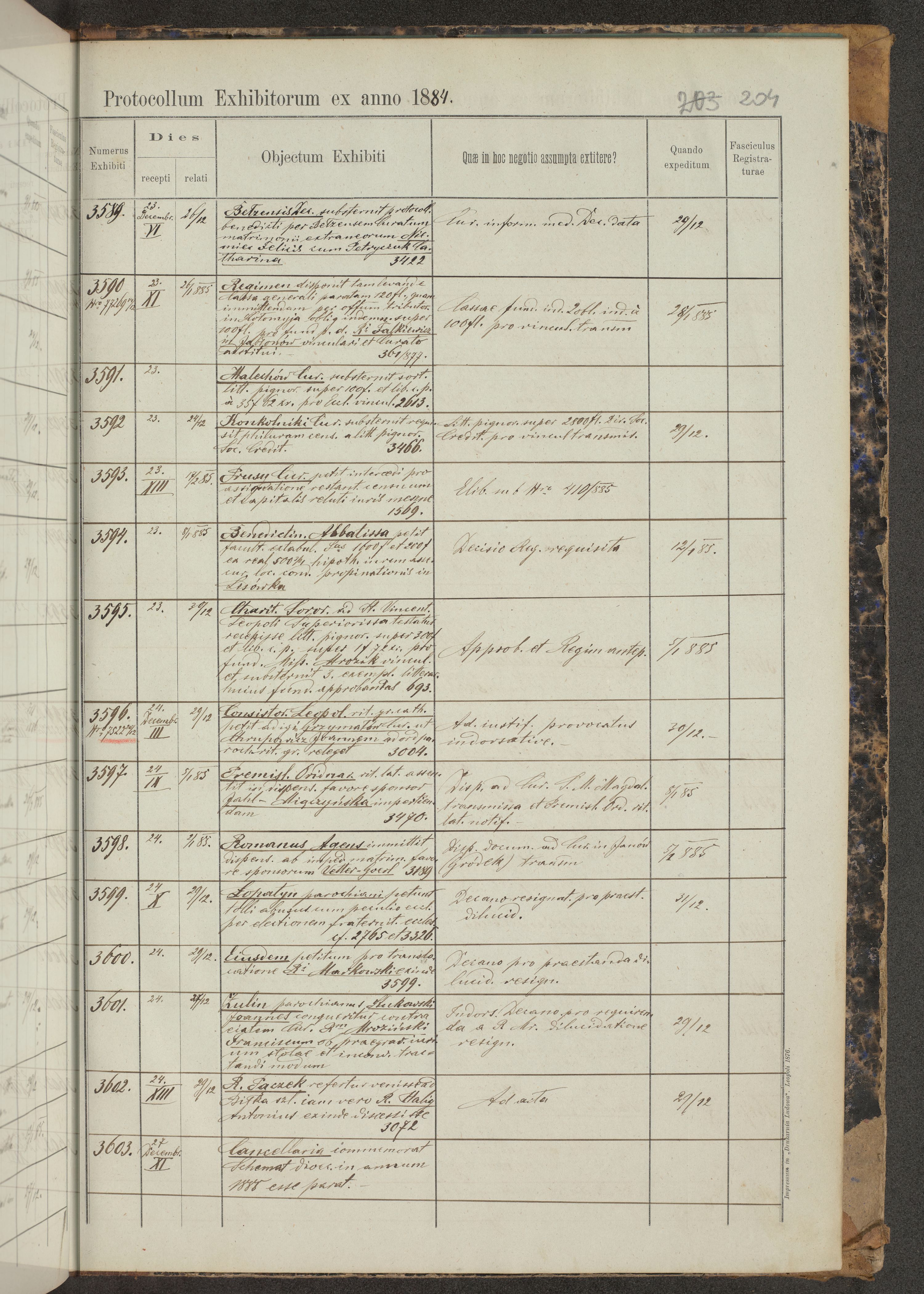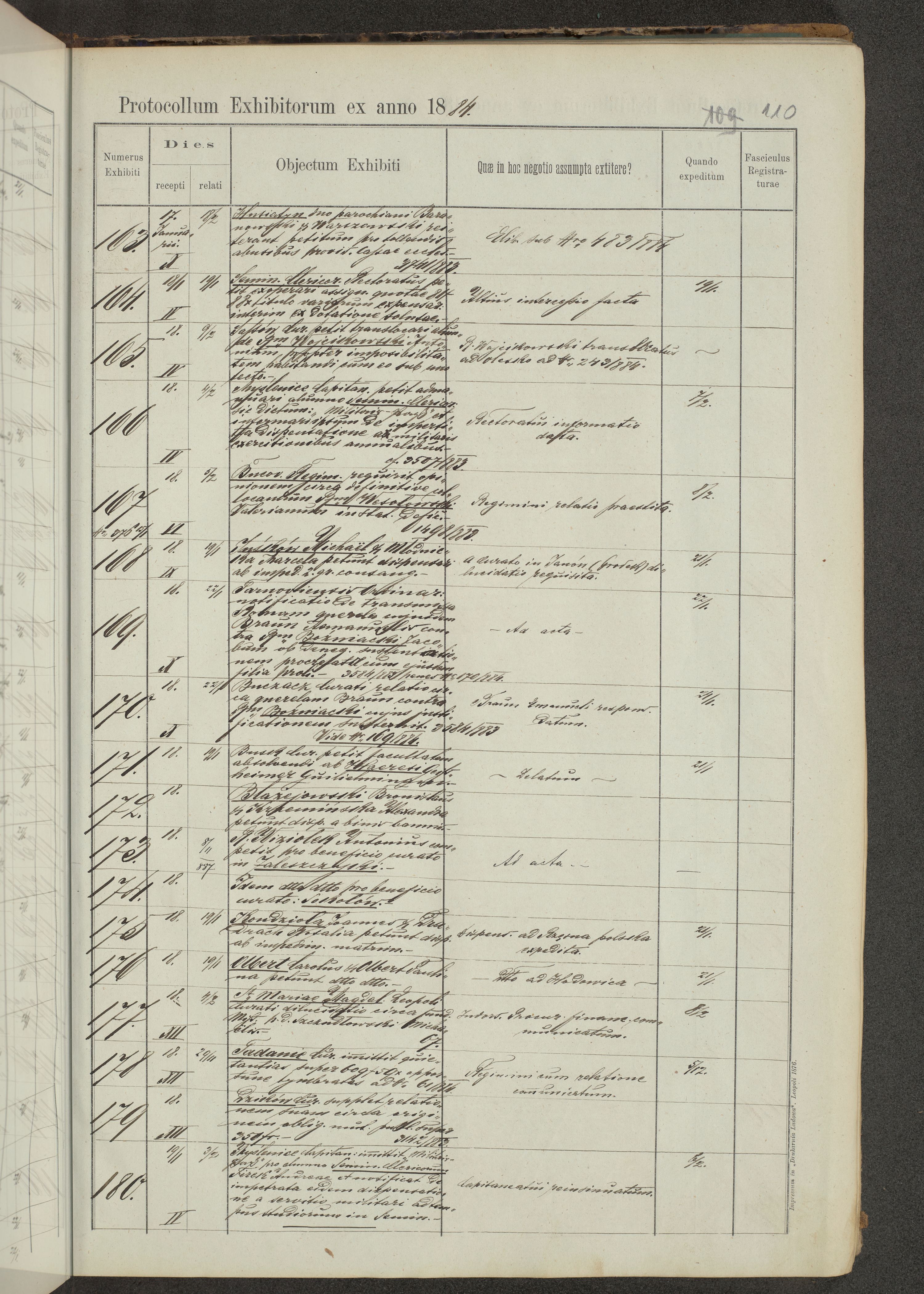 Protocollon exhibitorum in Ecclesiasticis ex anno 1883-1884