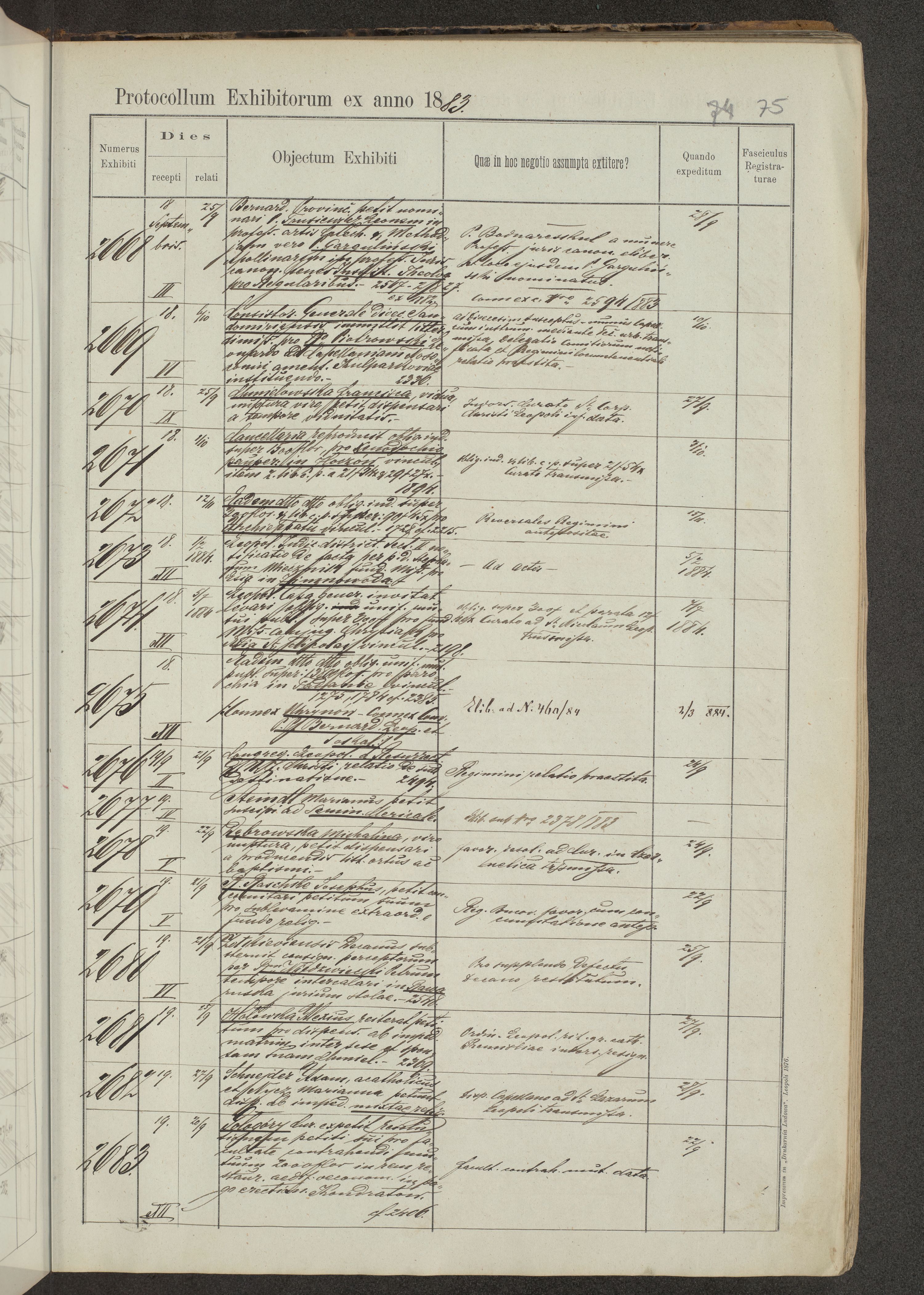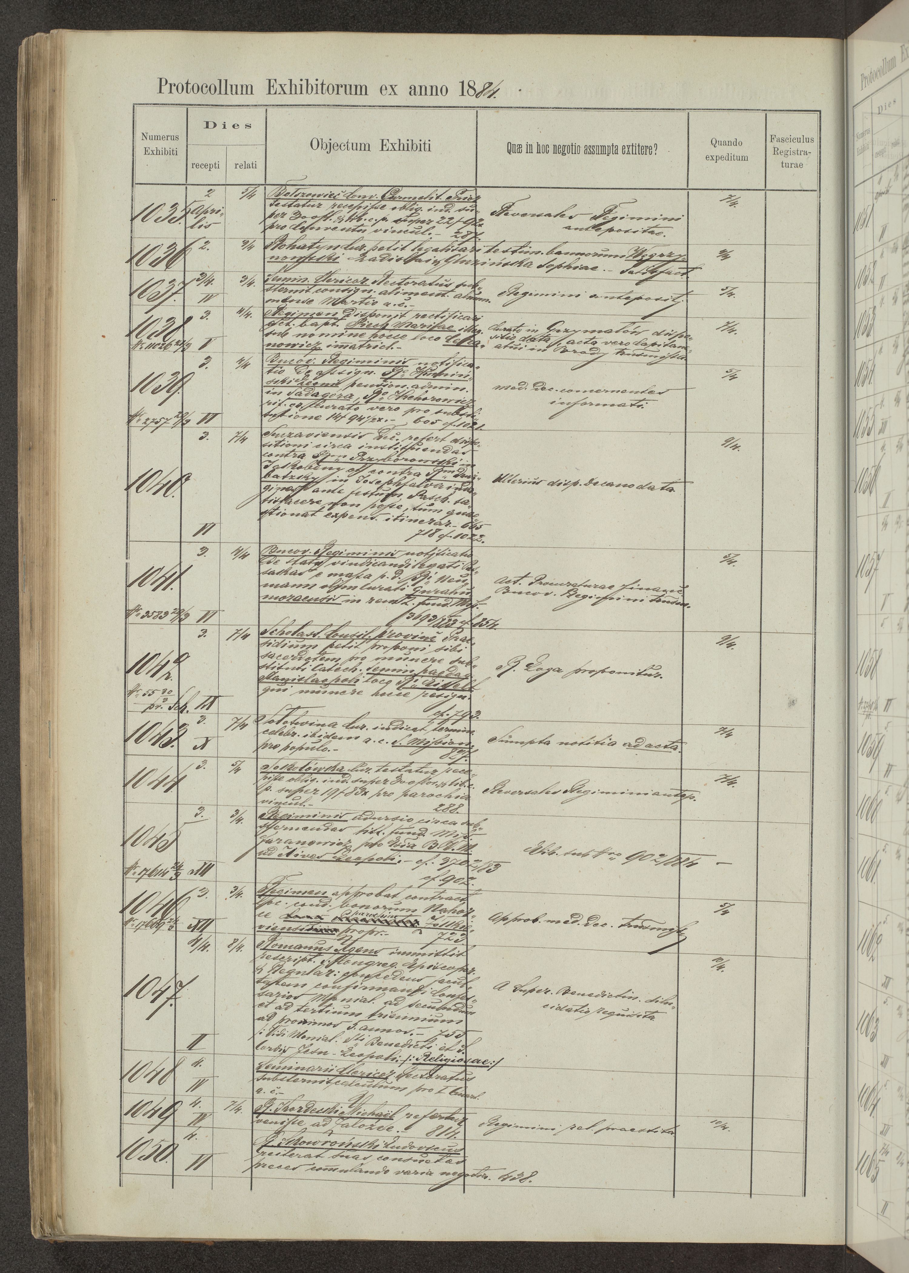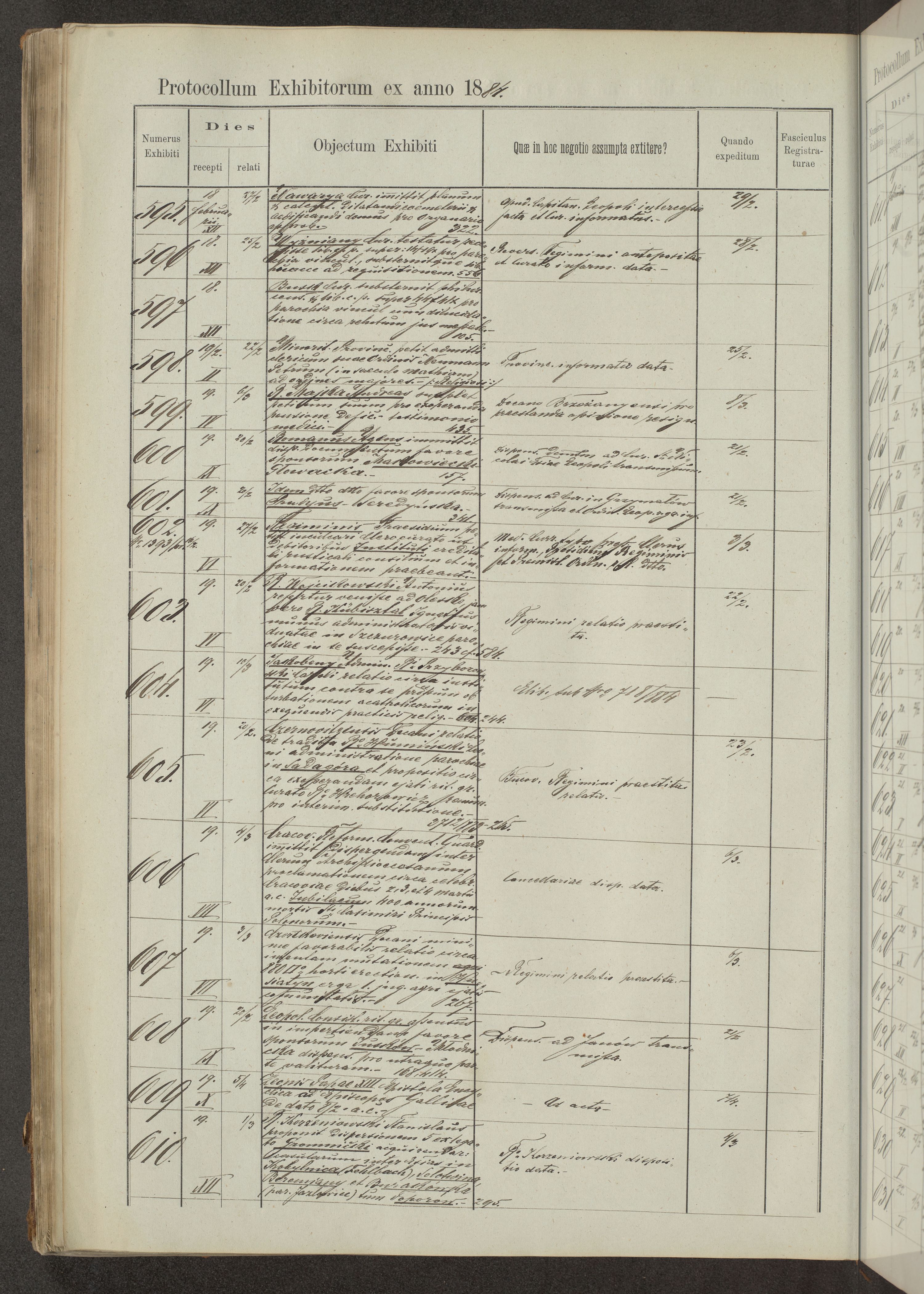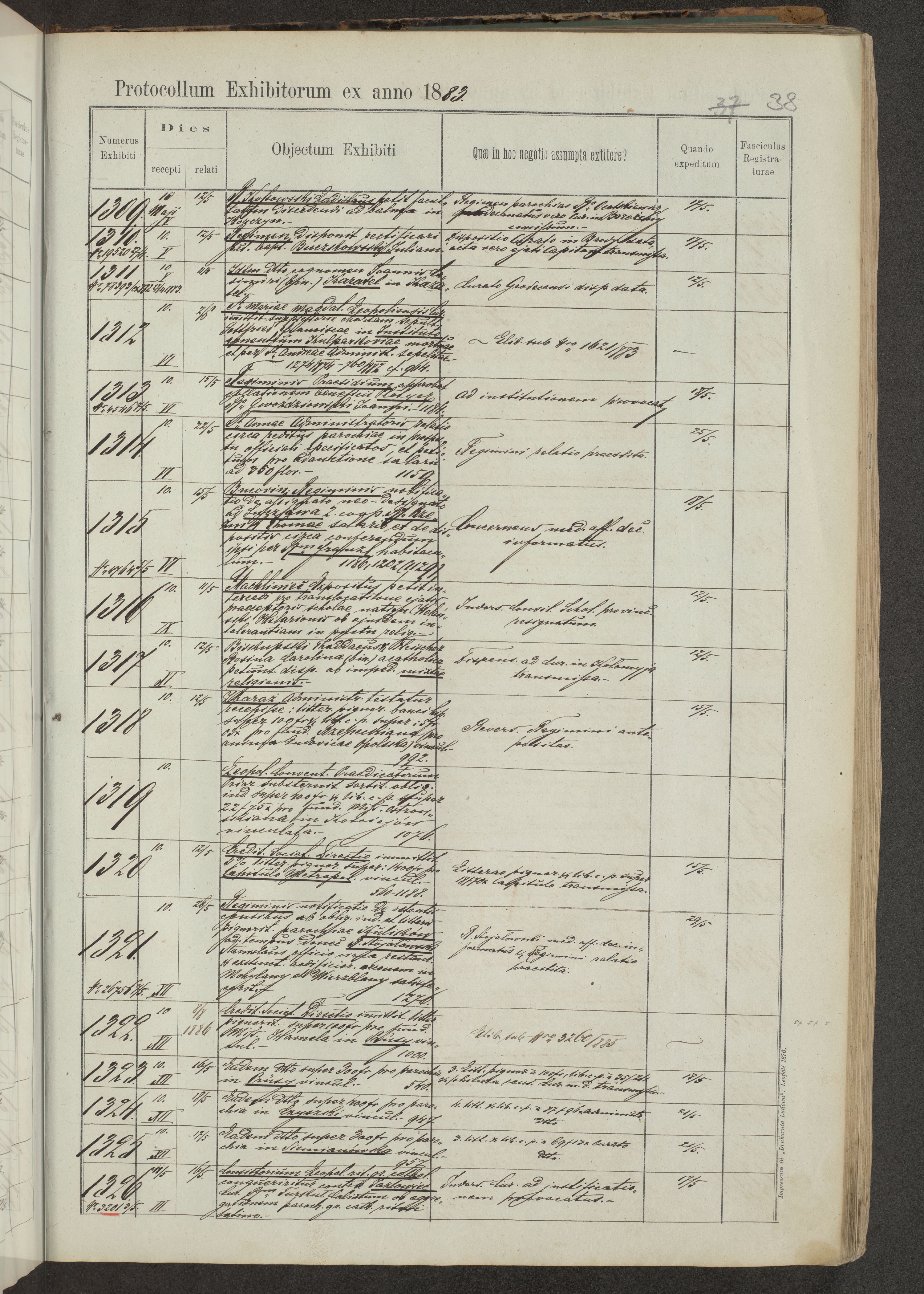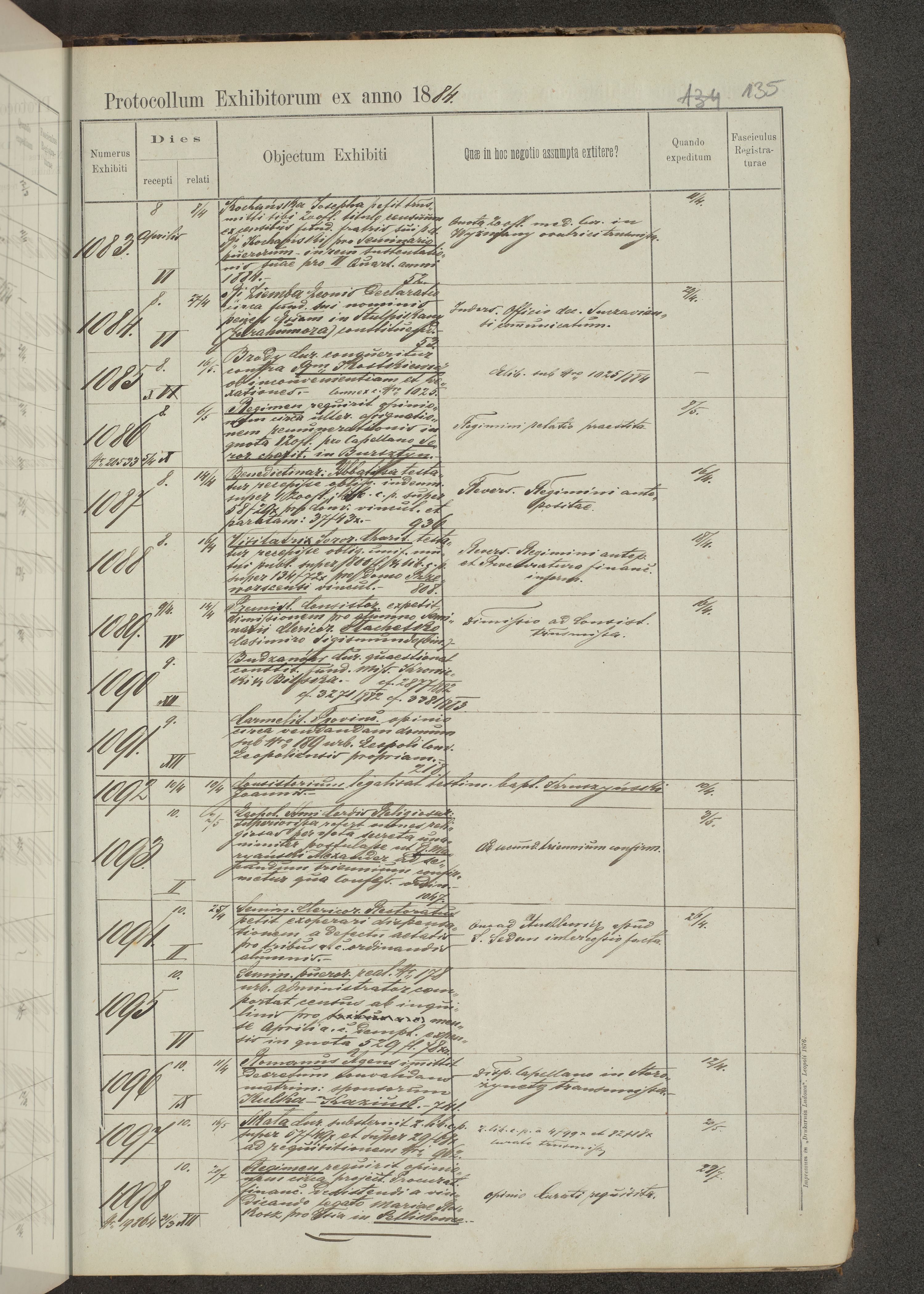 Protocollon exhibitorum in Ecclesiasticis ex anno 1883-1884
