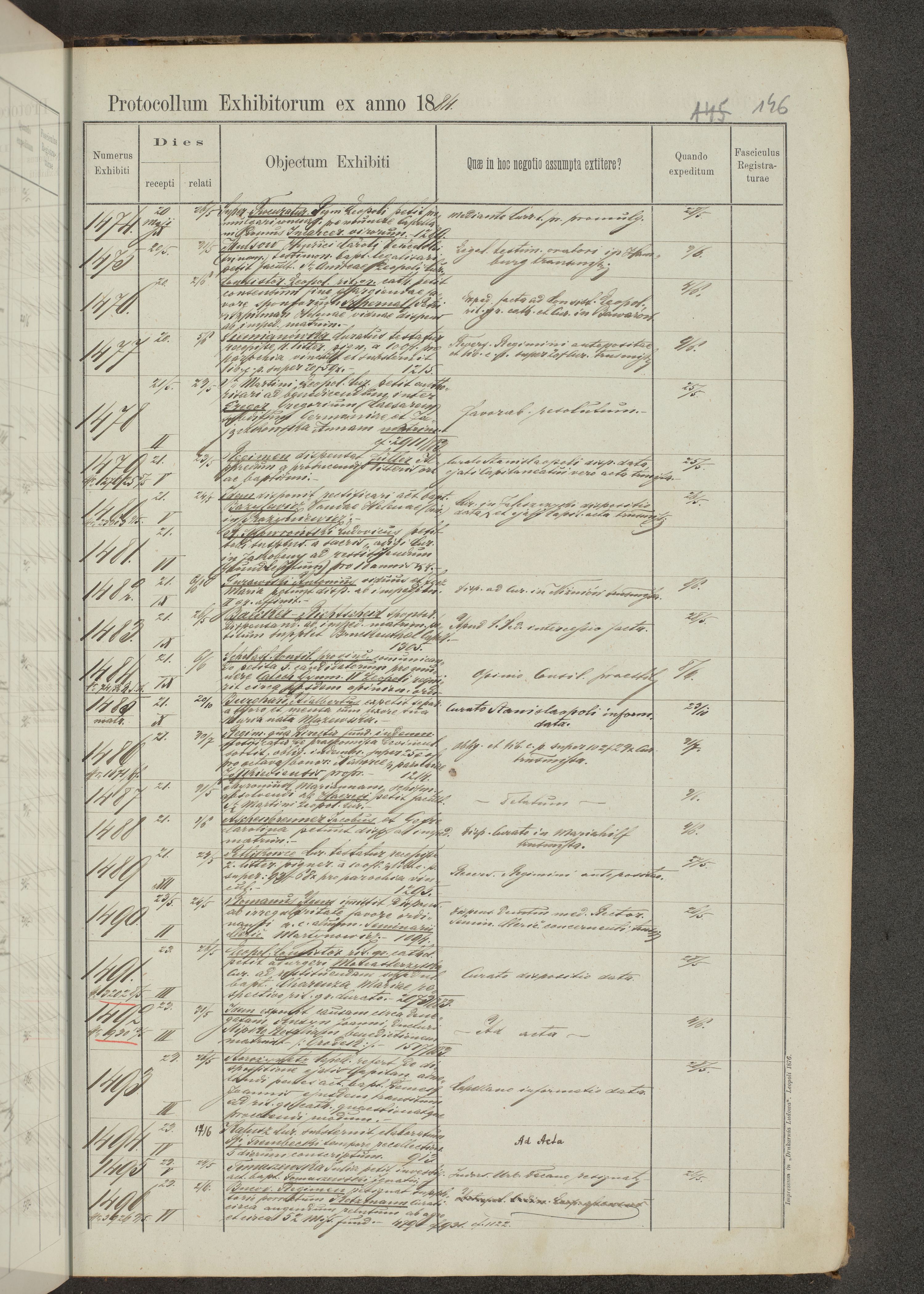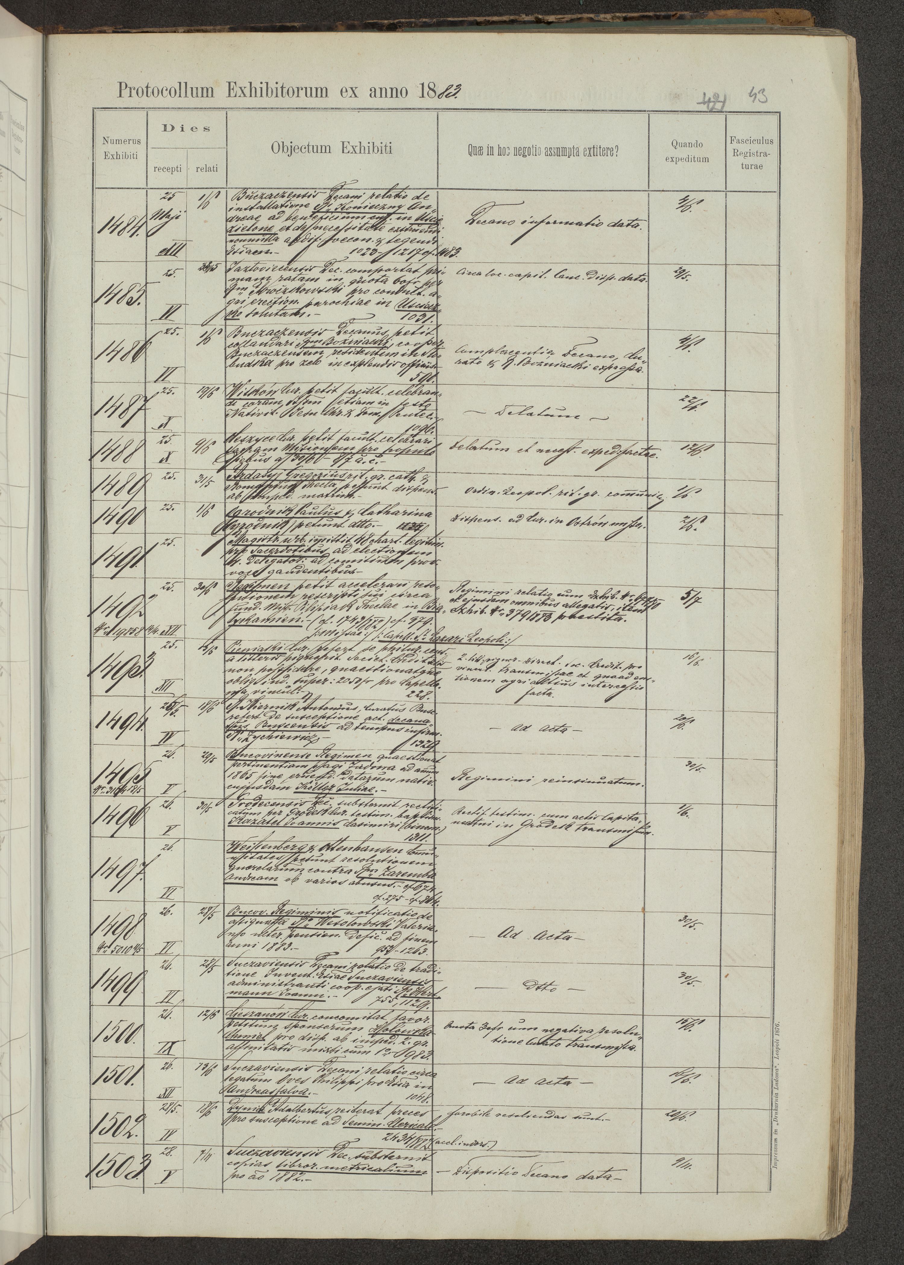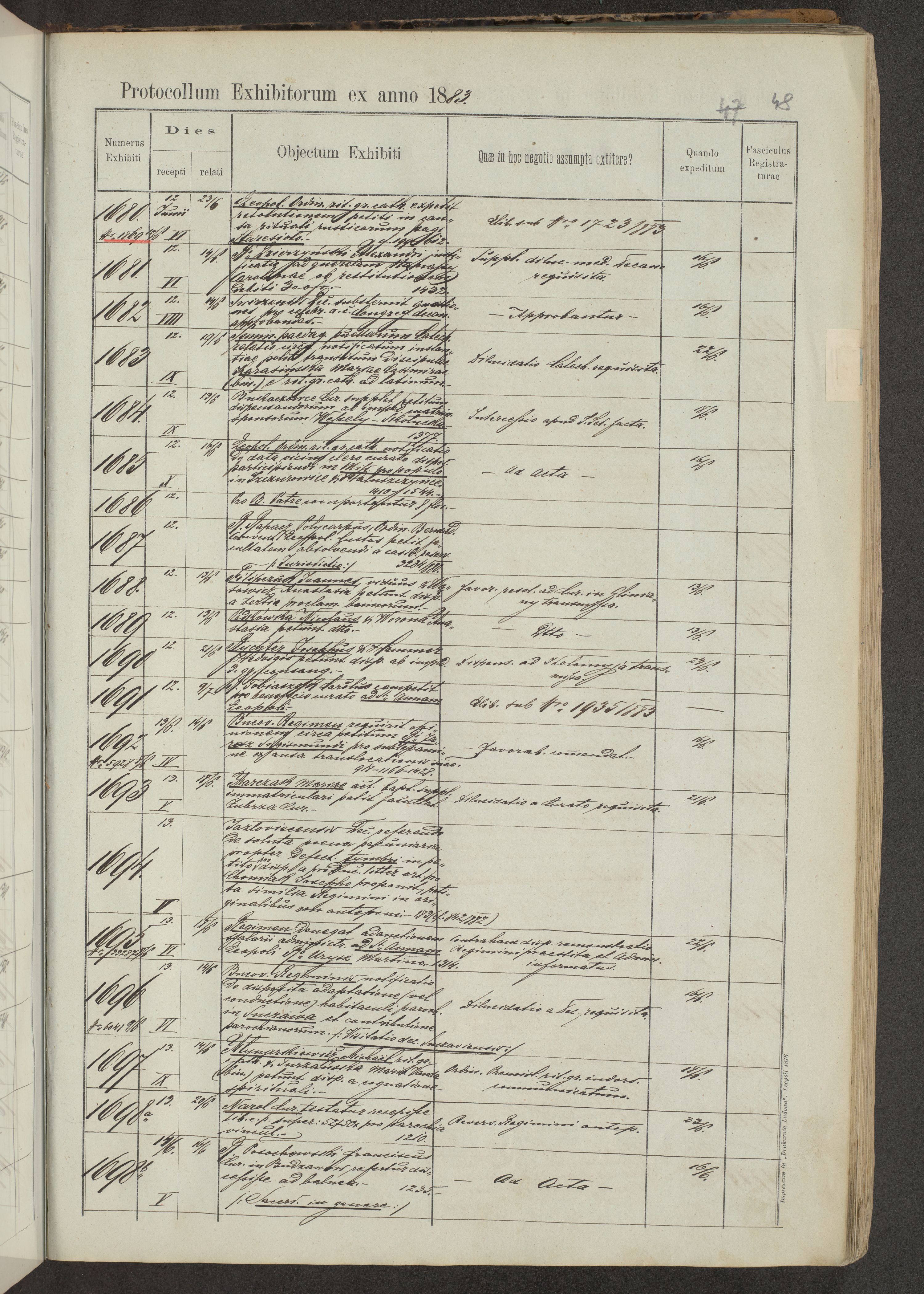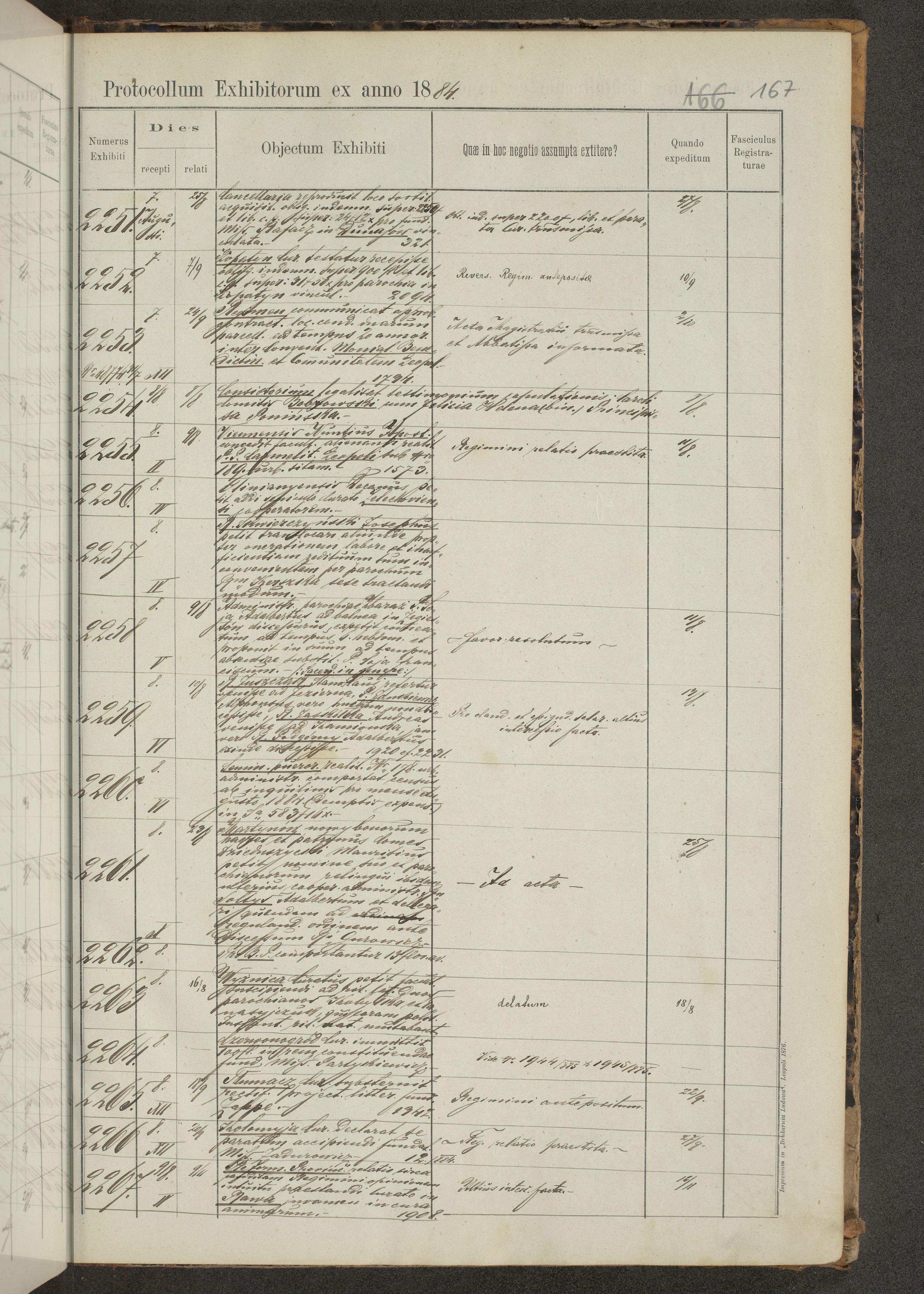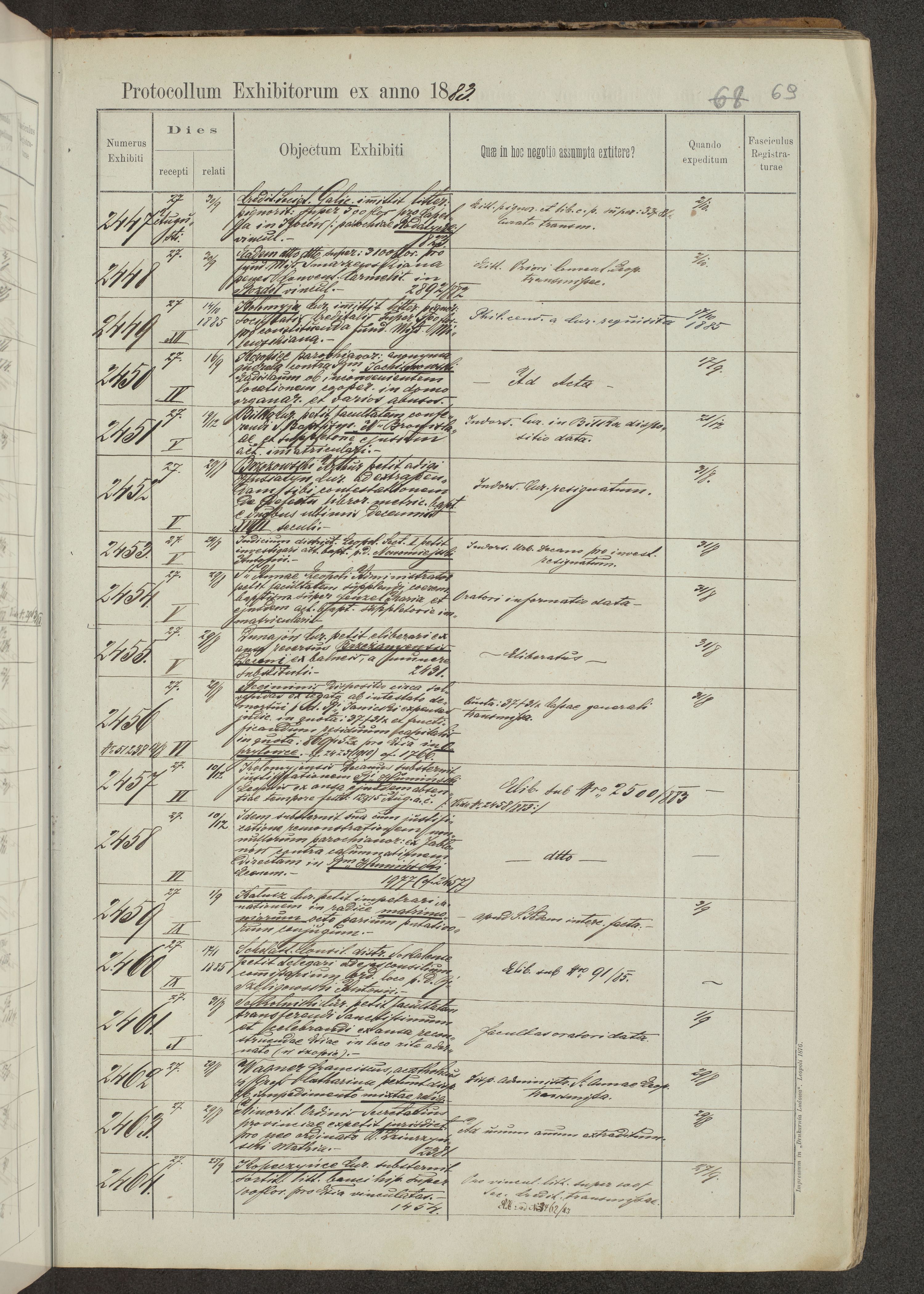 Protocollon exhibitorum in Ecclesiasticis ex anno 1883-1884