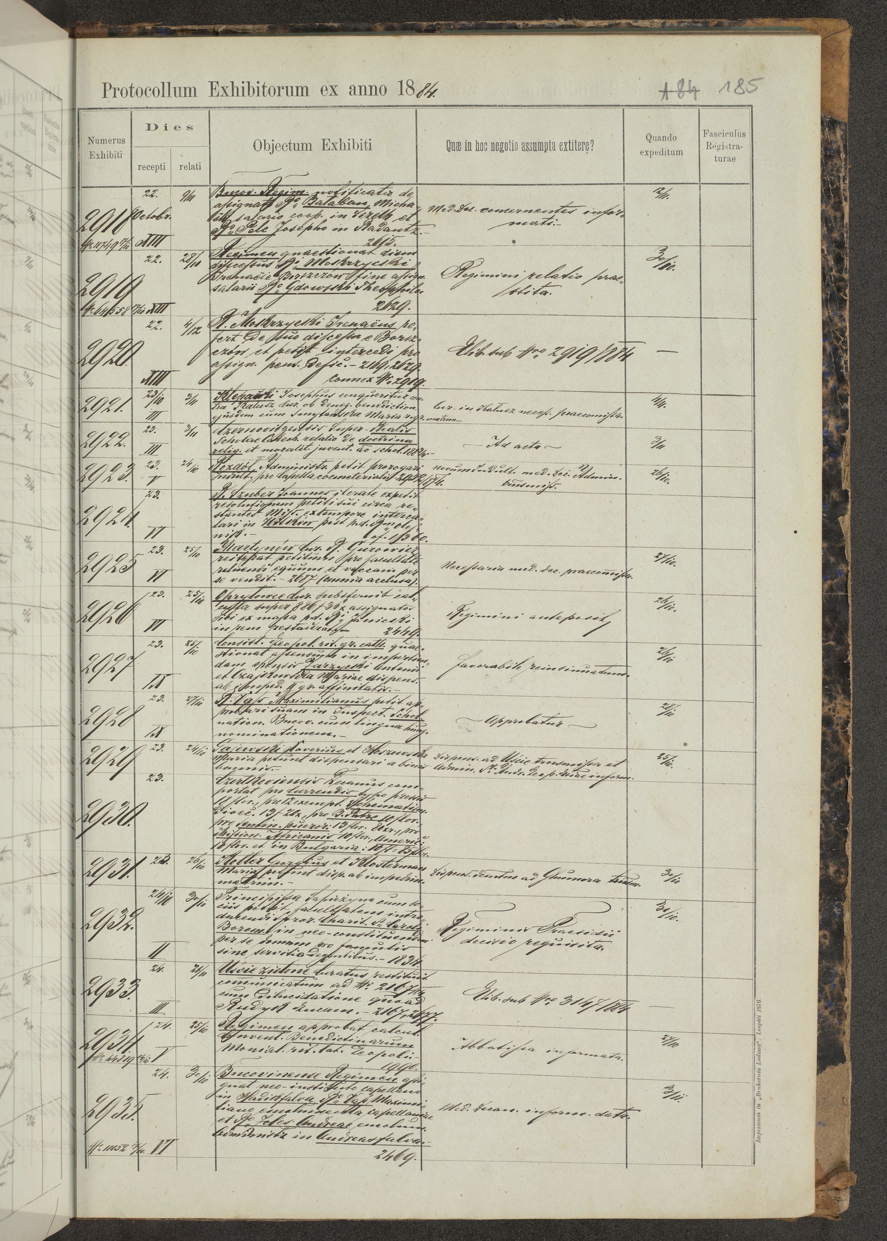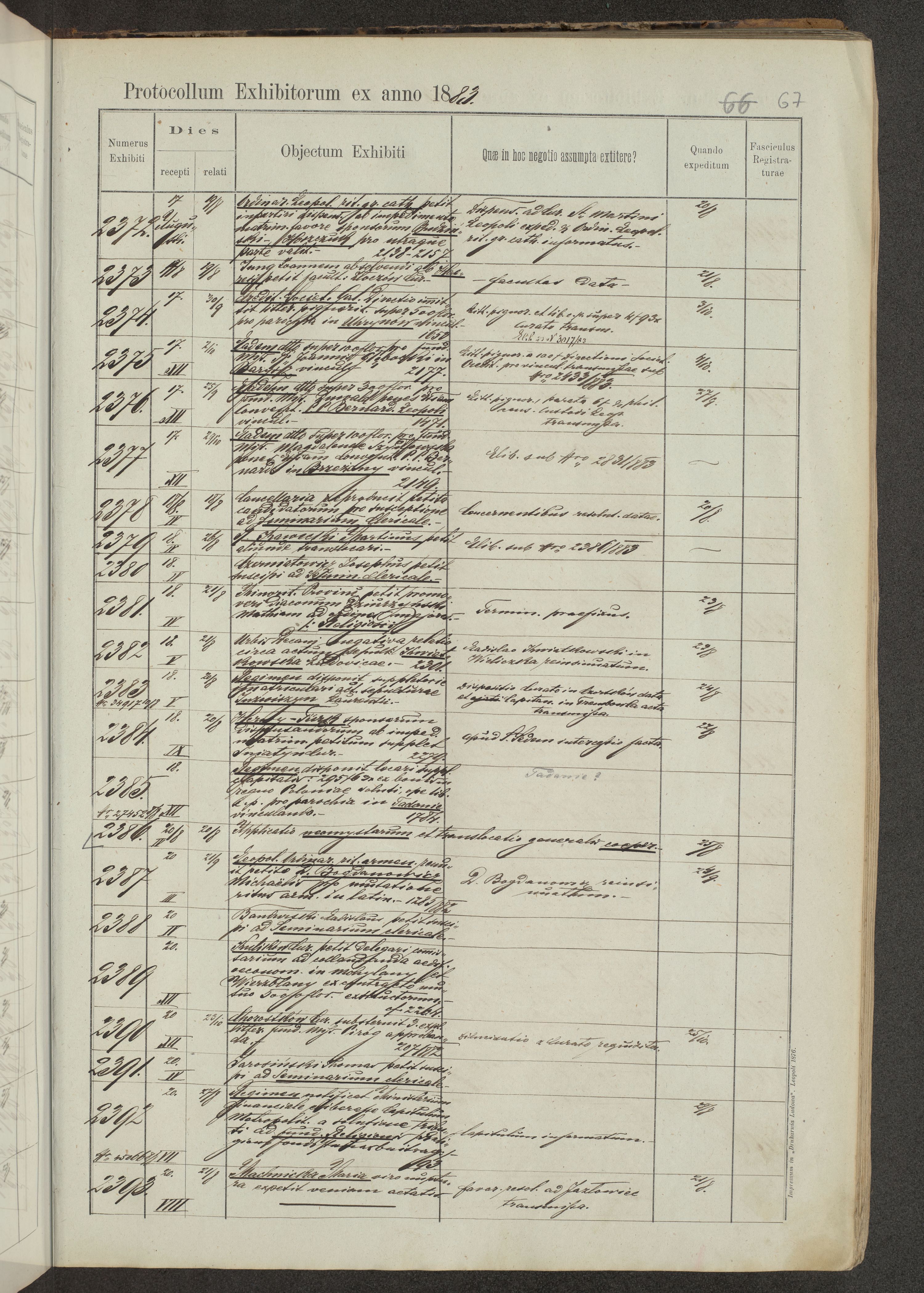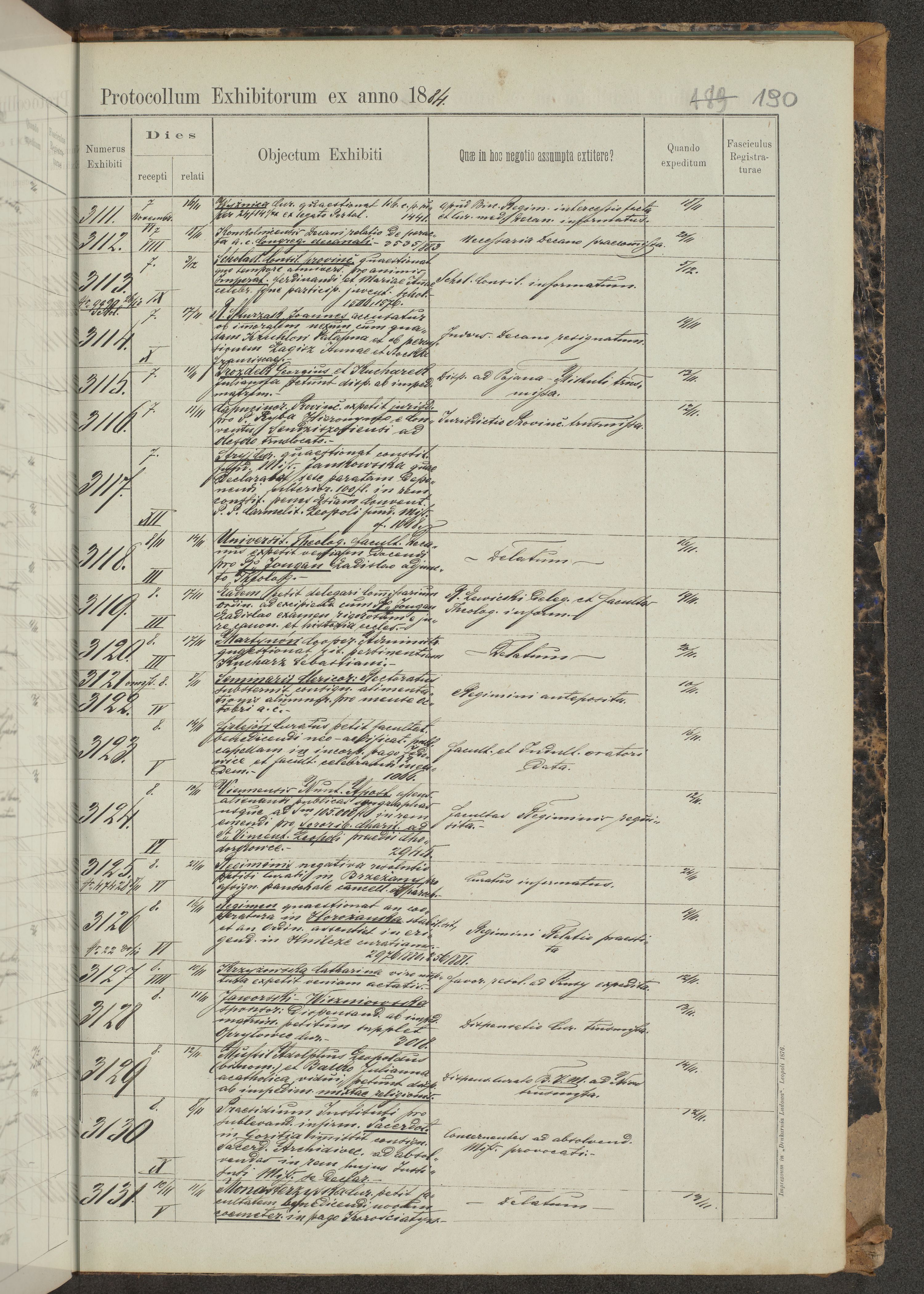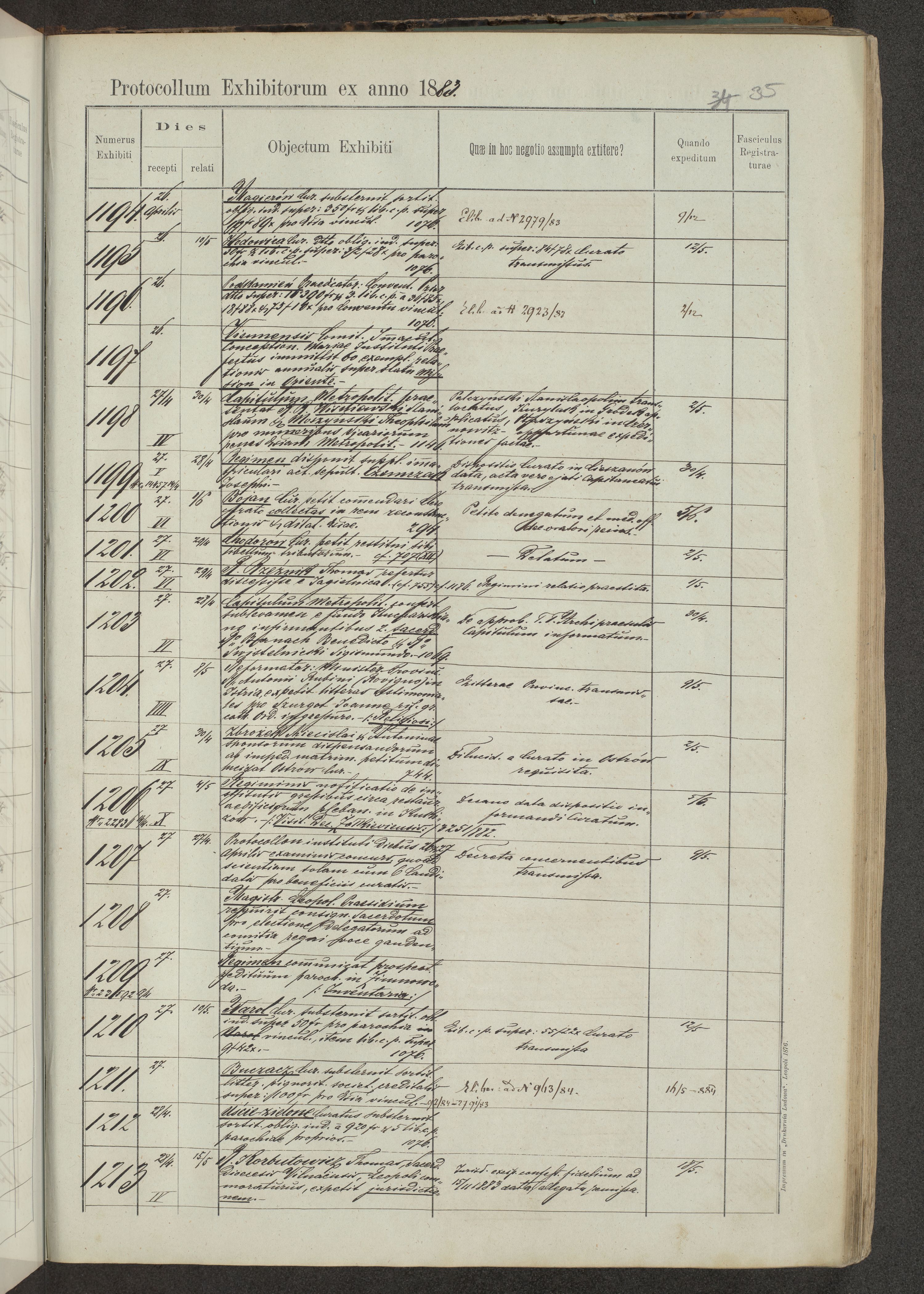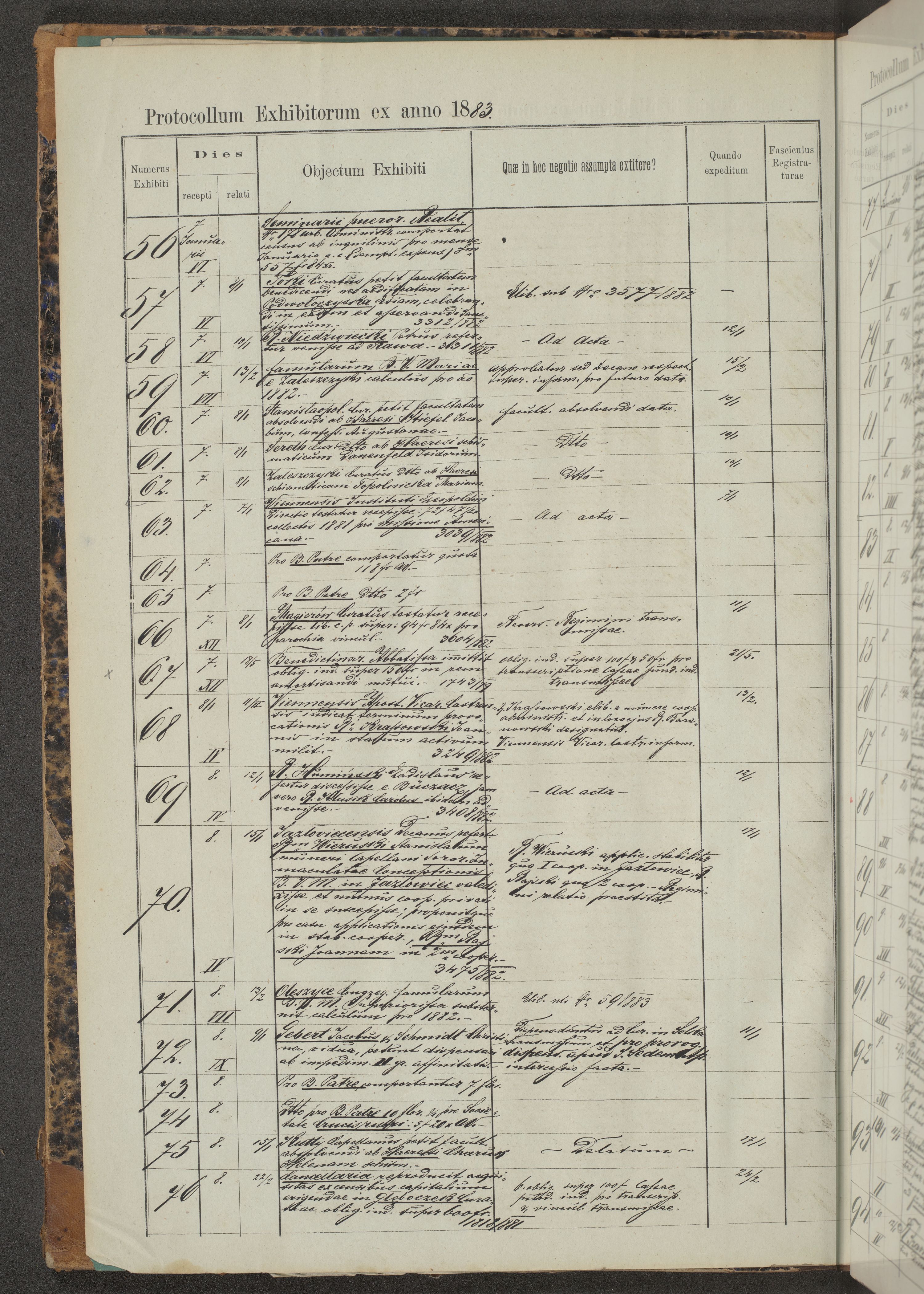 Protocollon exhibitorum in Ecclesiasticis ex anno 1883-1884