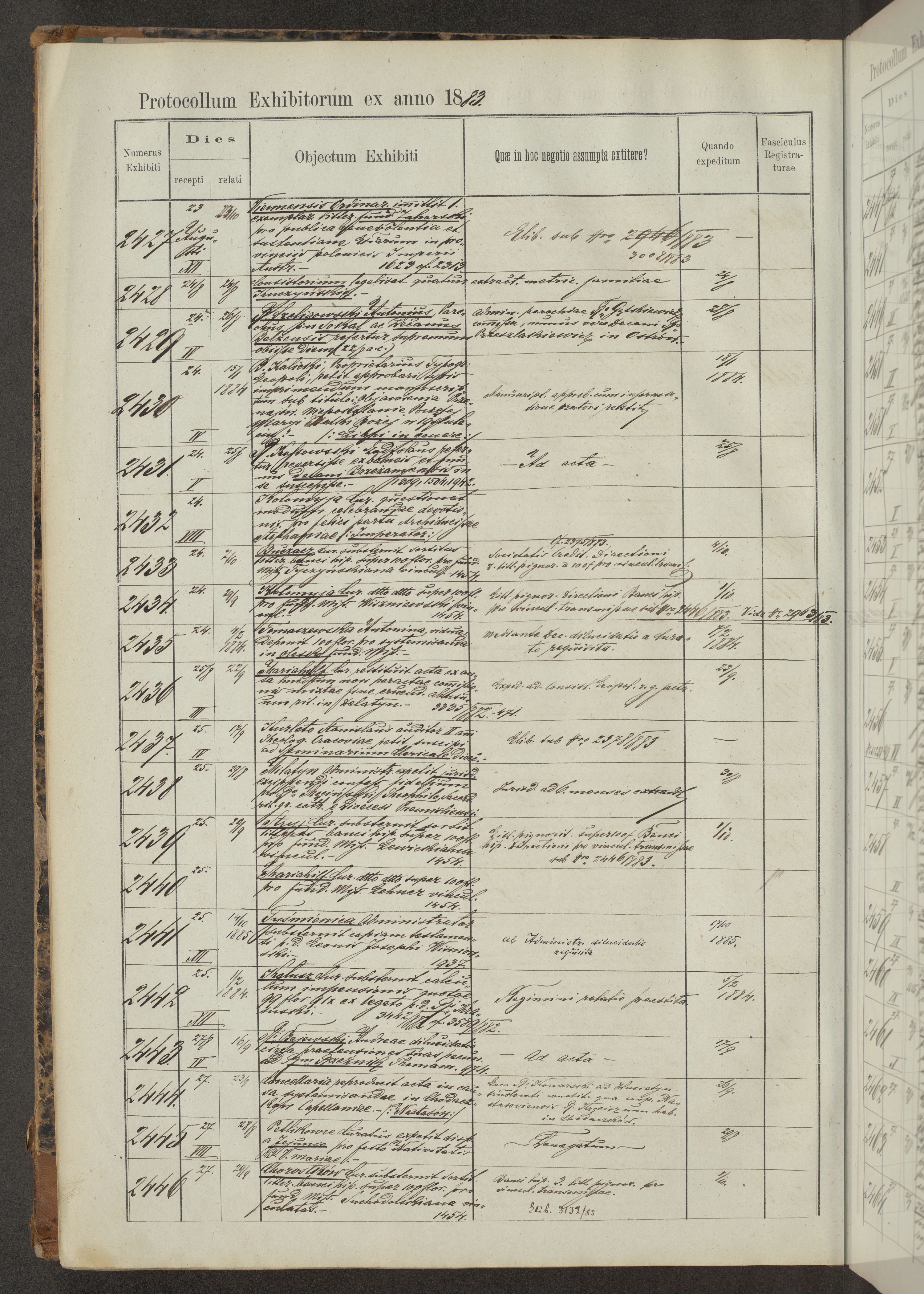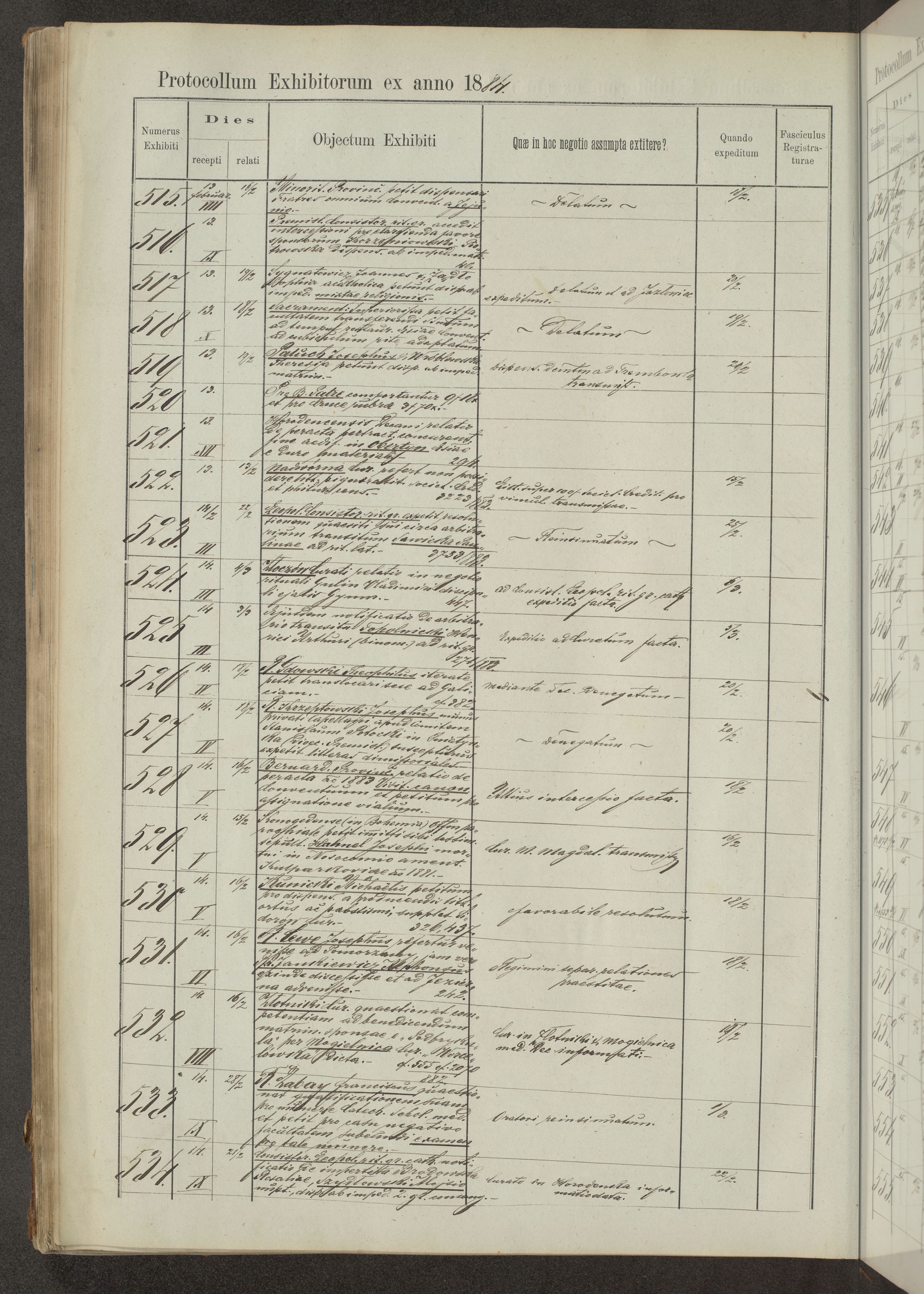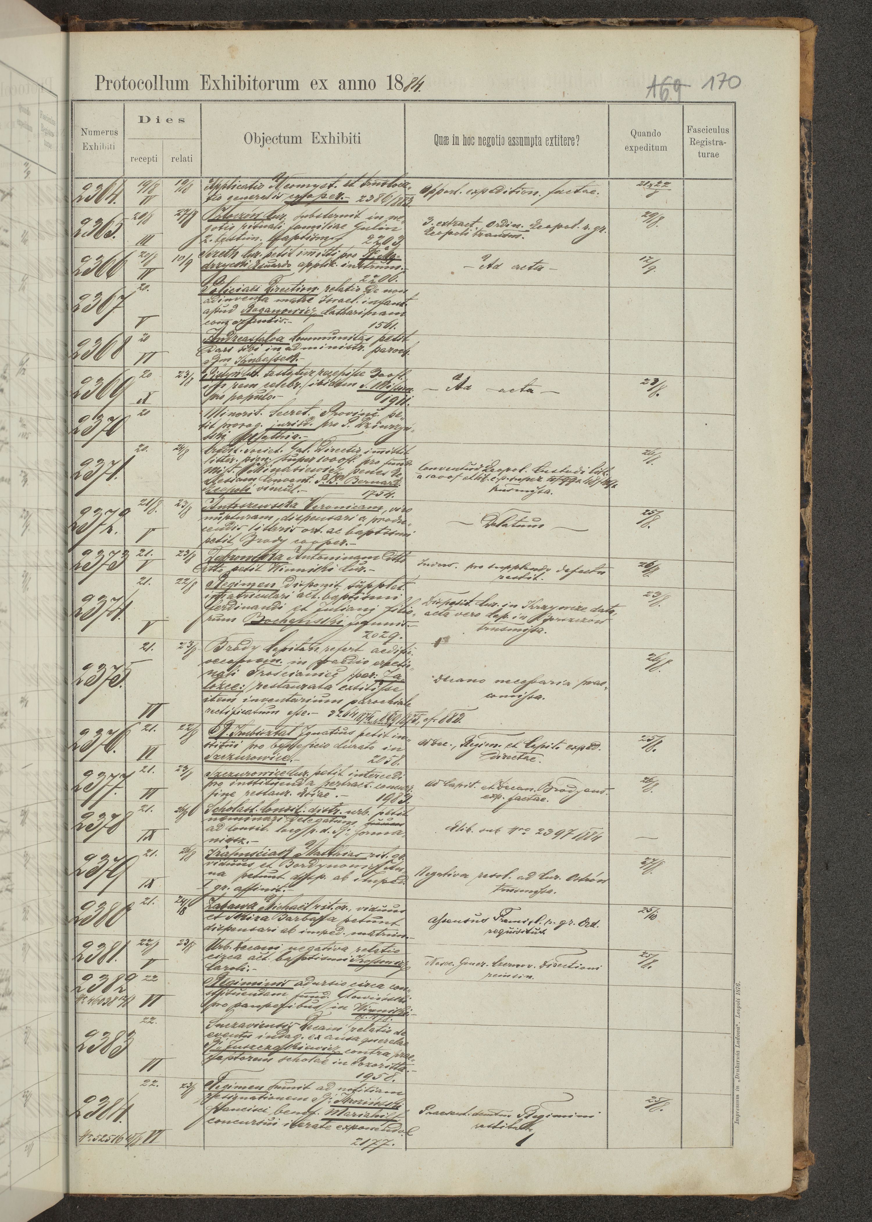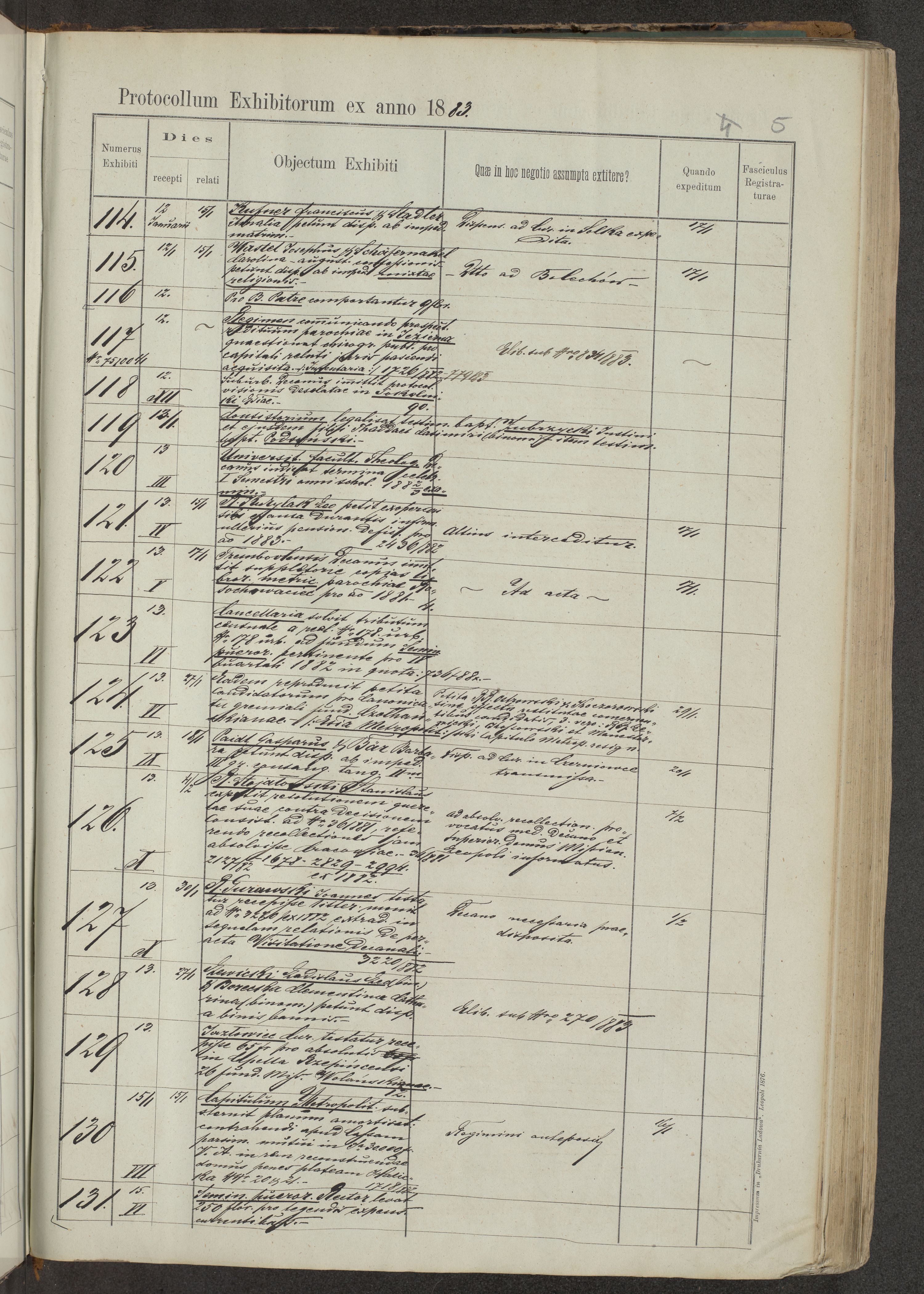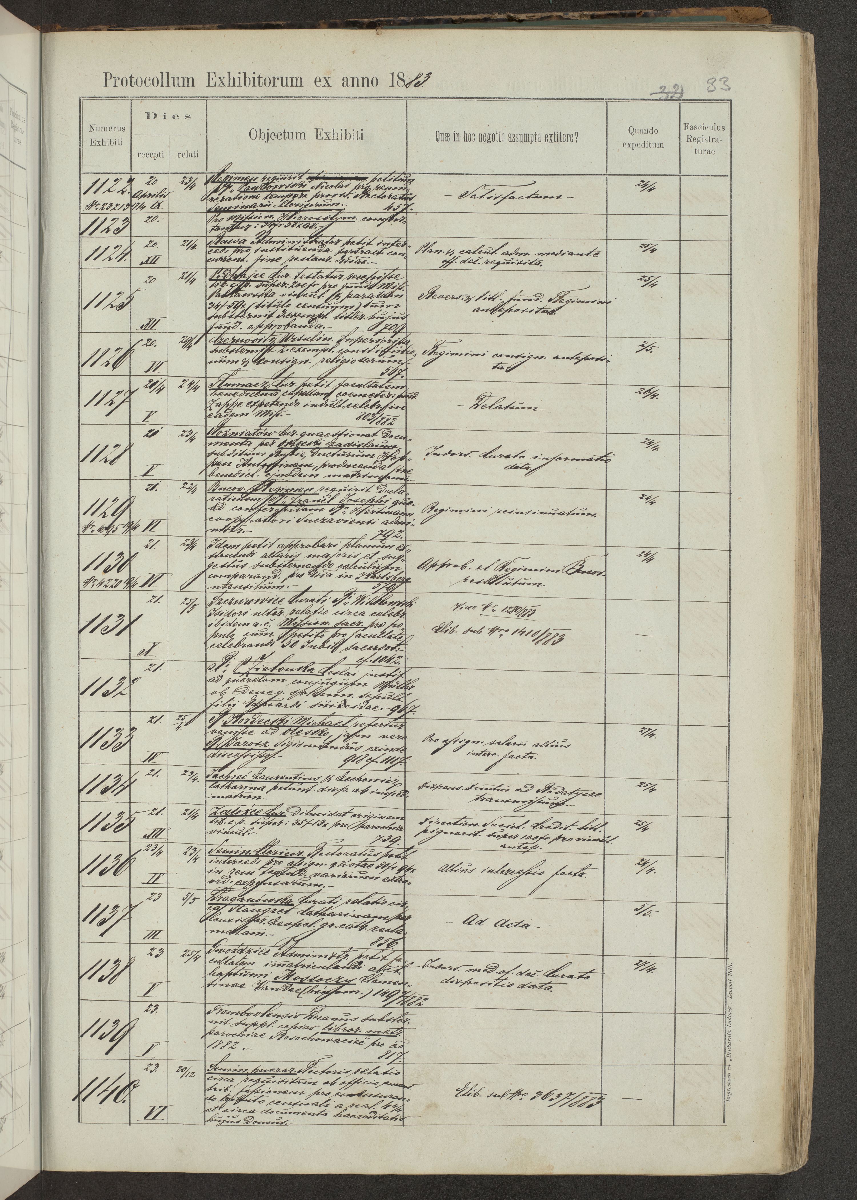 Protocollon exhibitorum in Ecclesiasticis ex anno 1883-1884