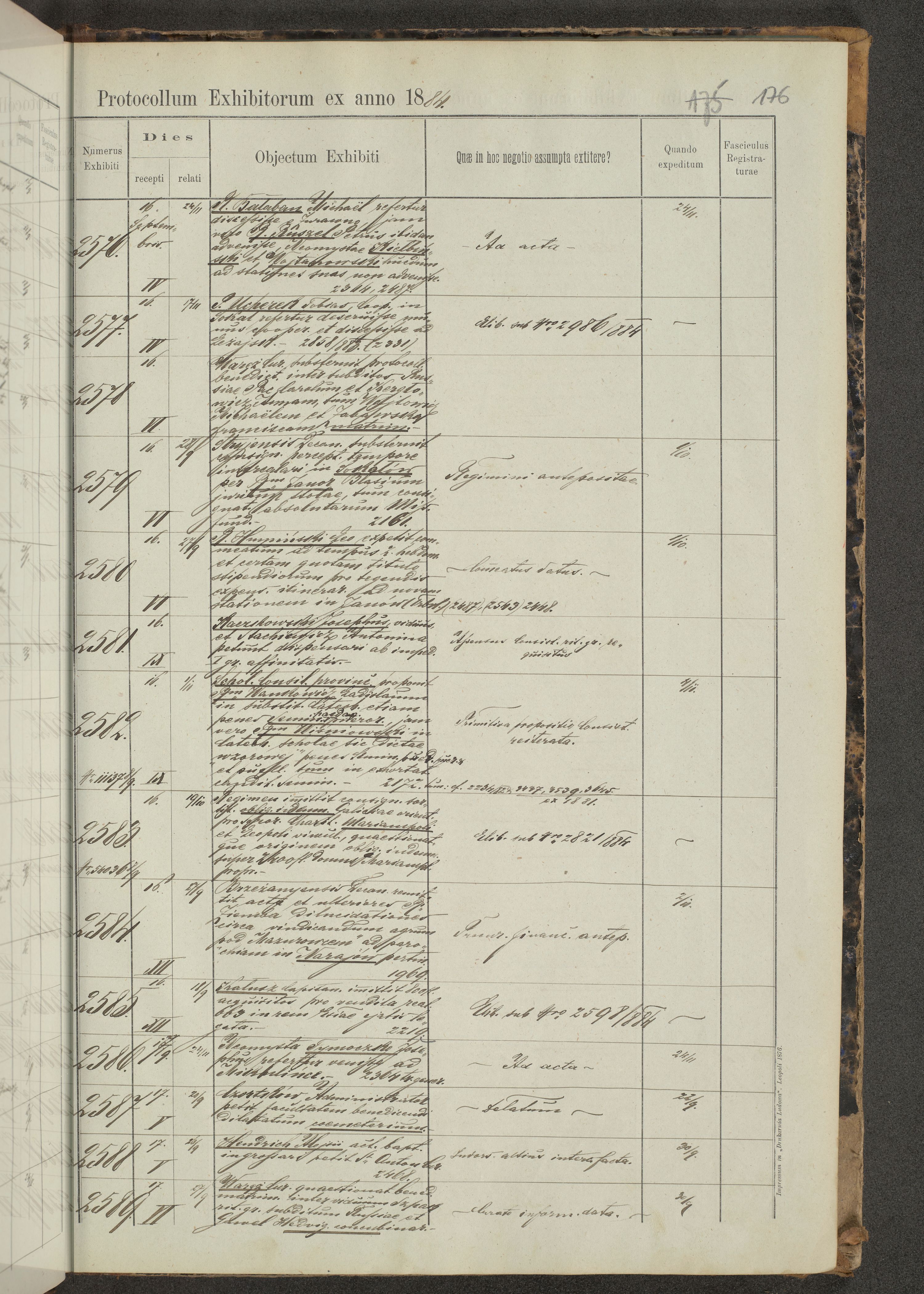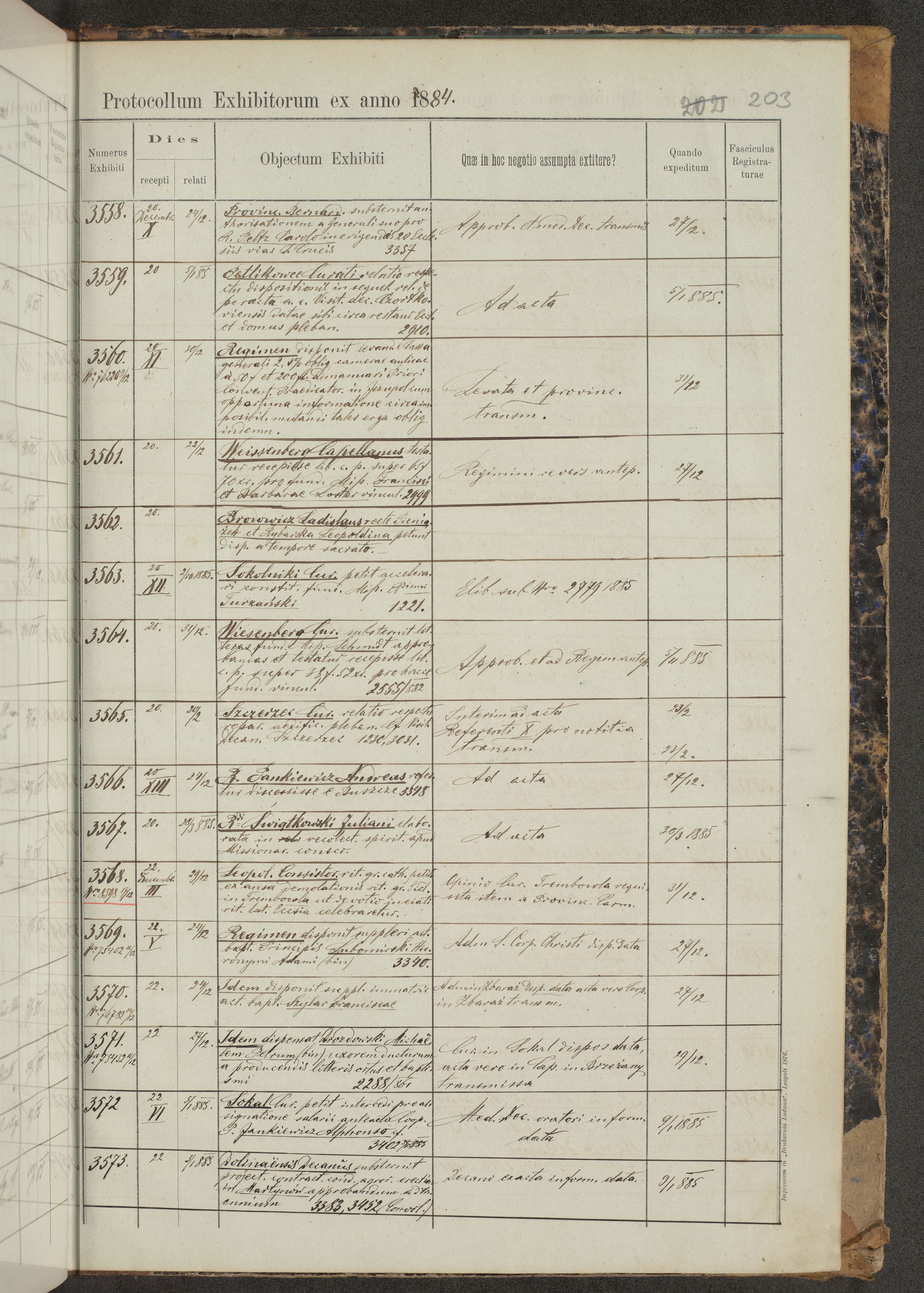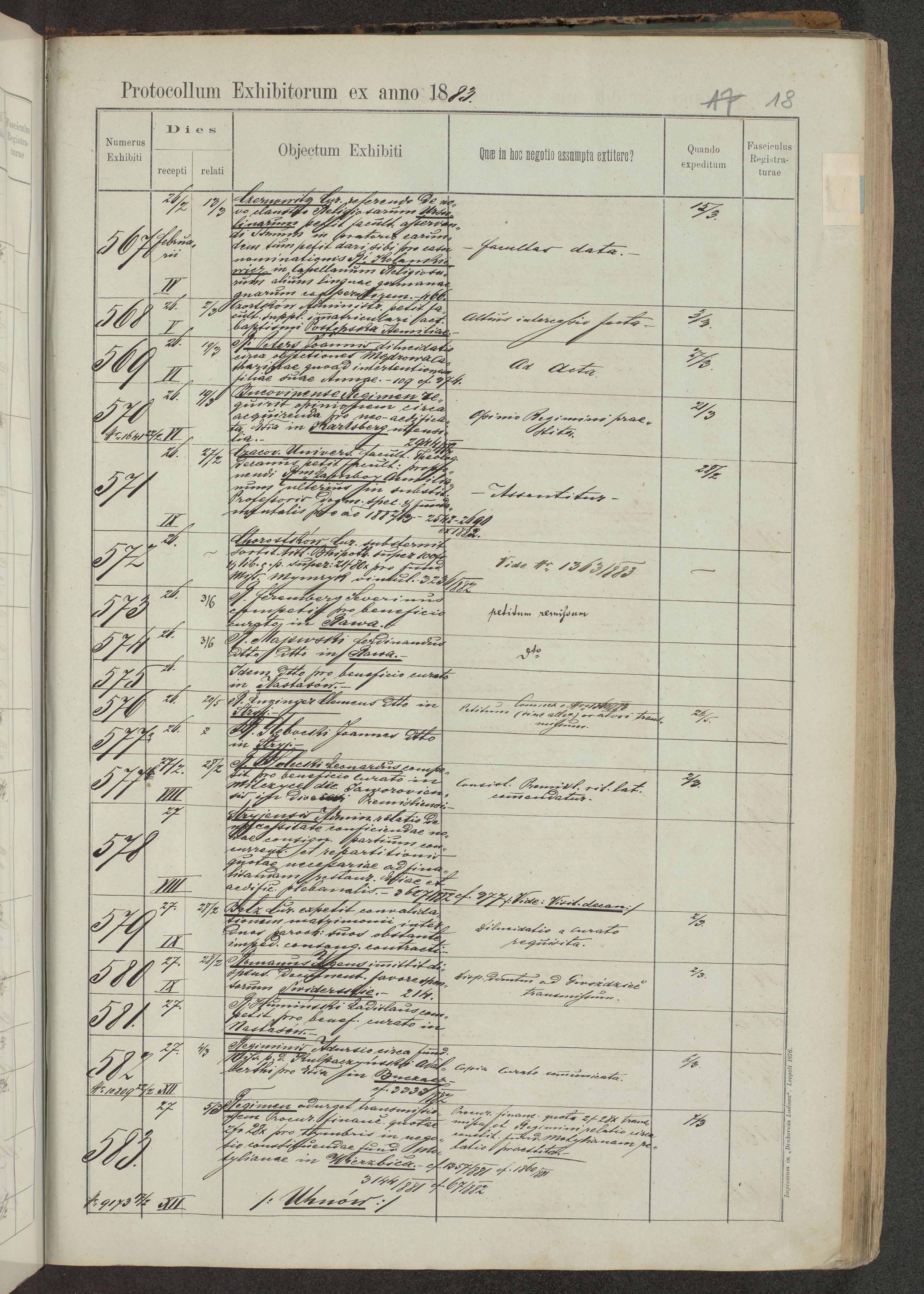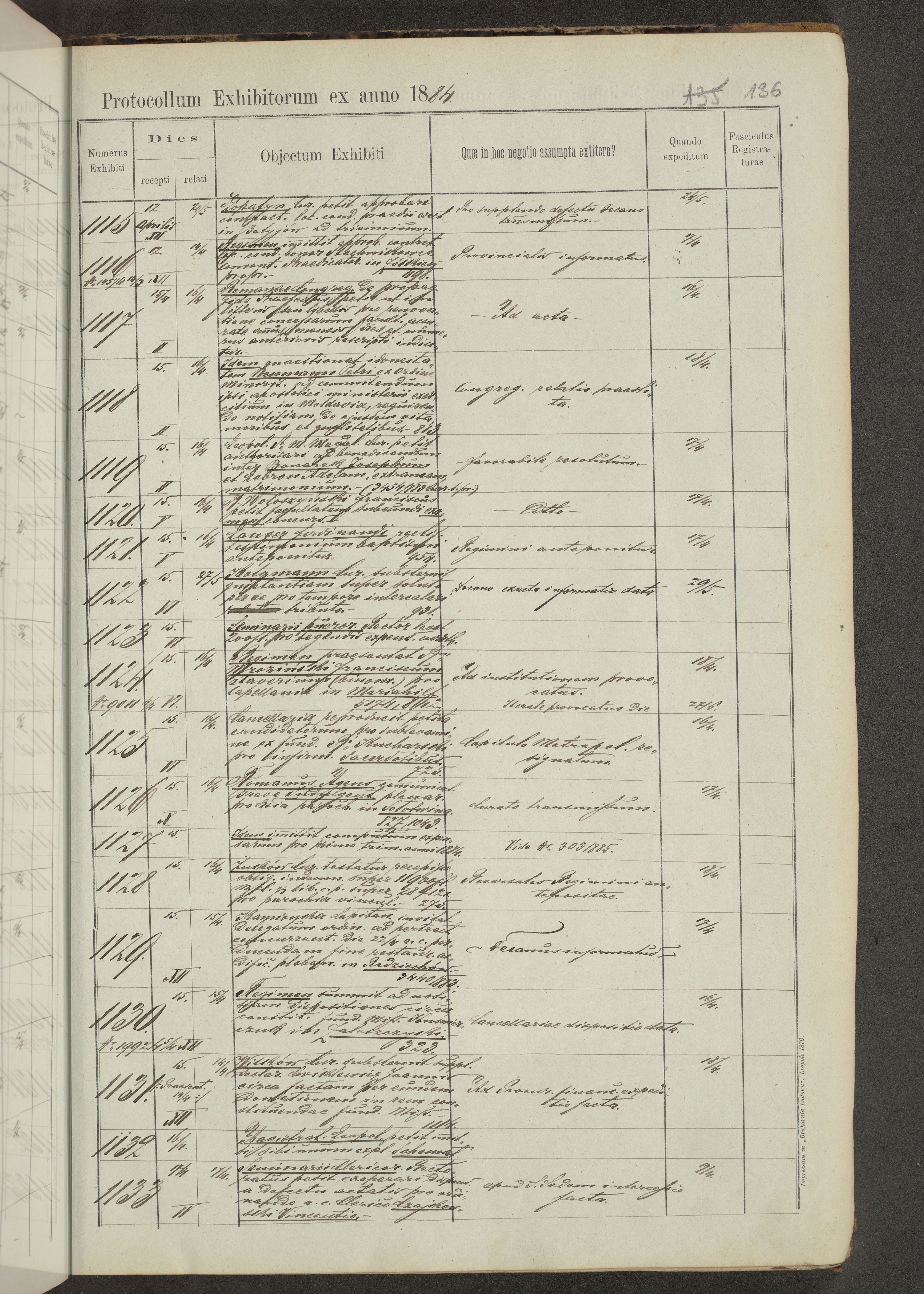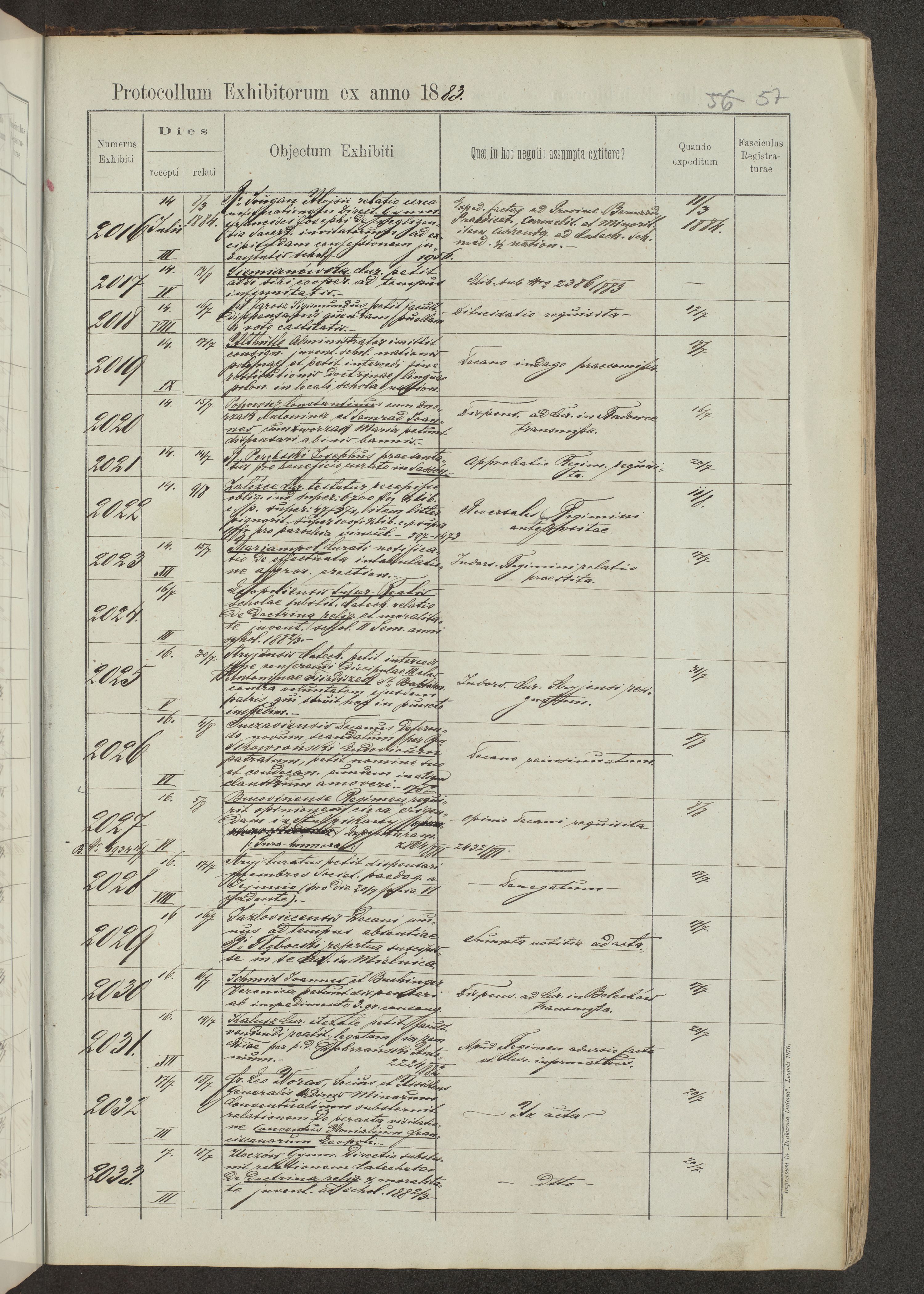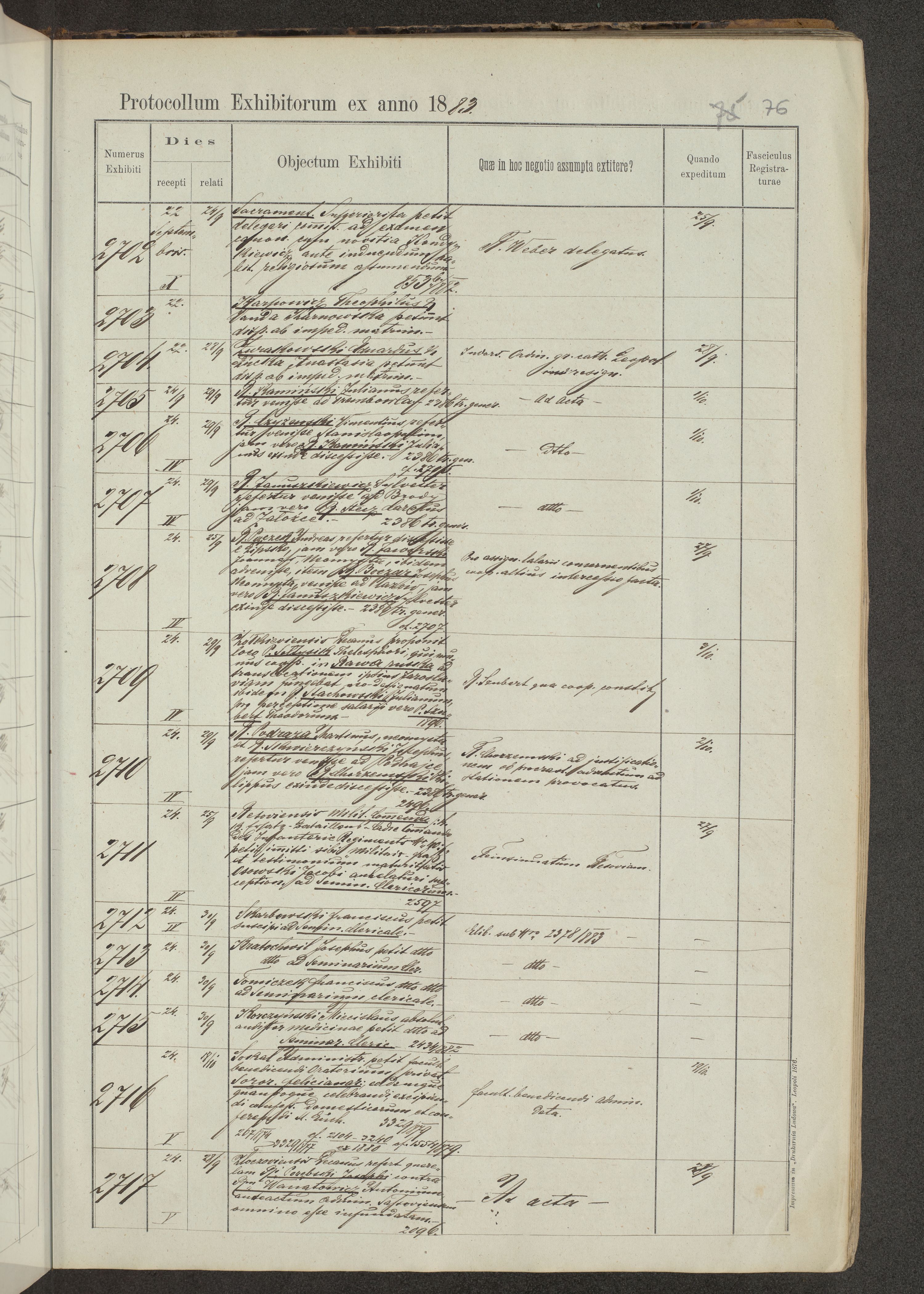 Protocollon exhibitorum in Ecclesiasticis ex anno 1883-1884