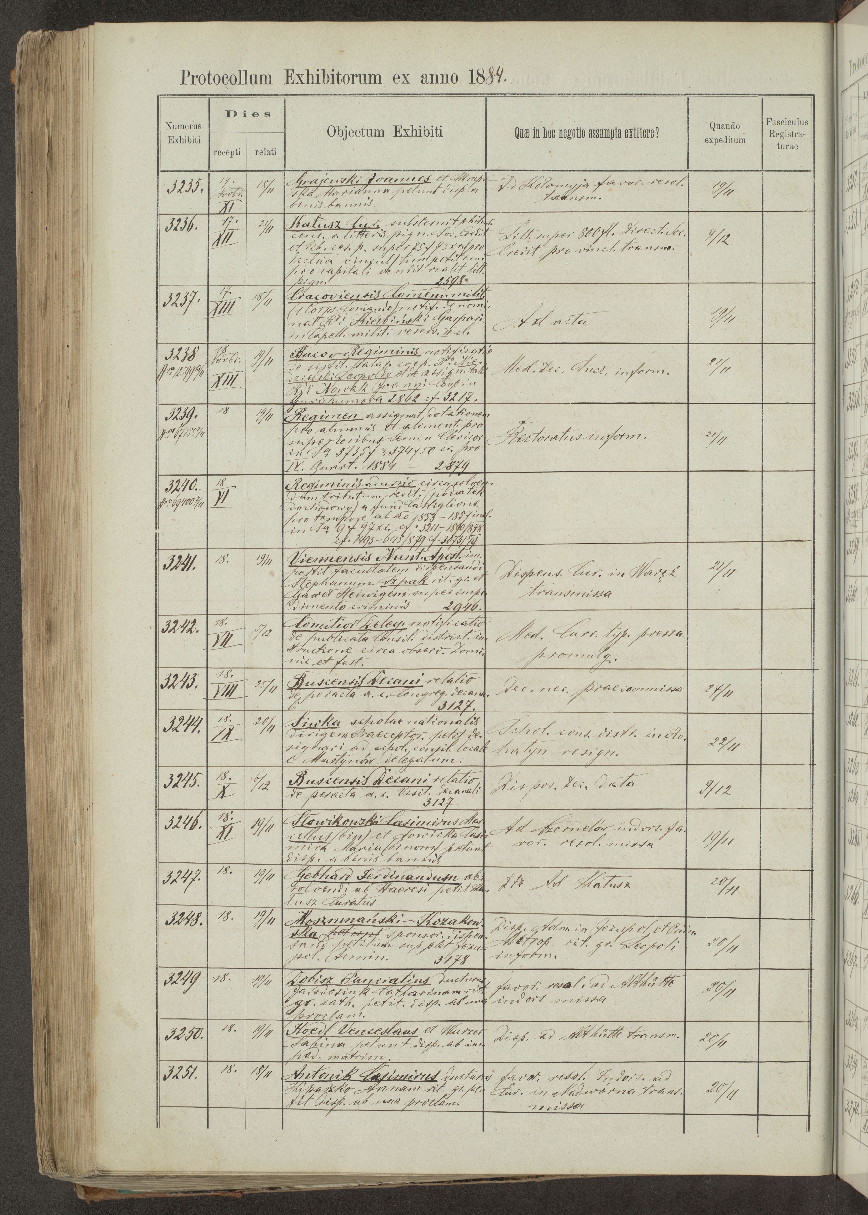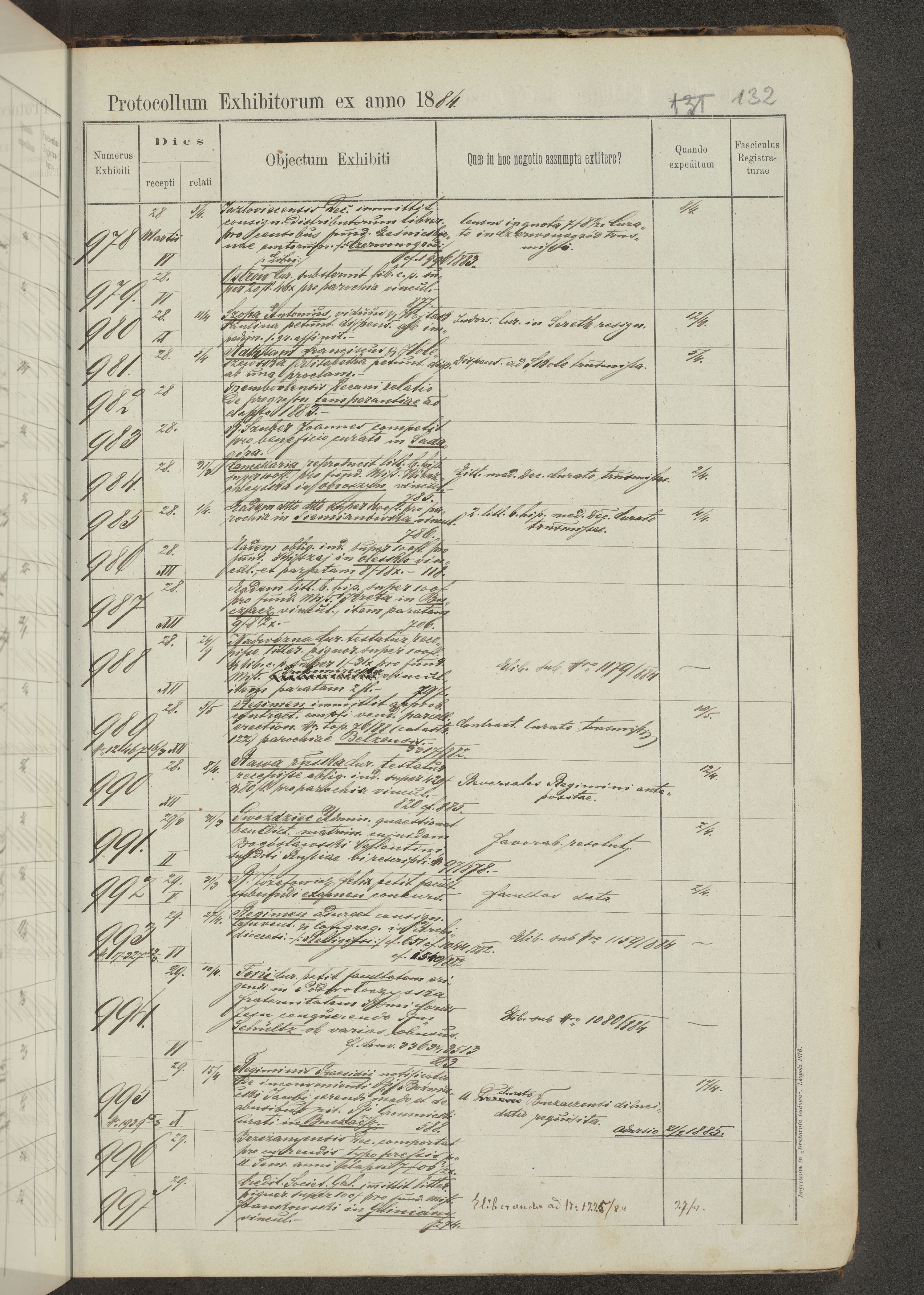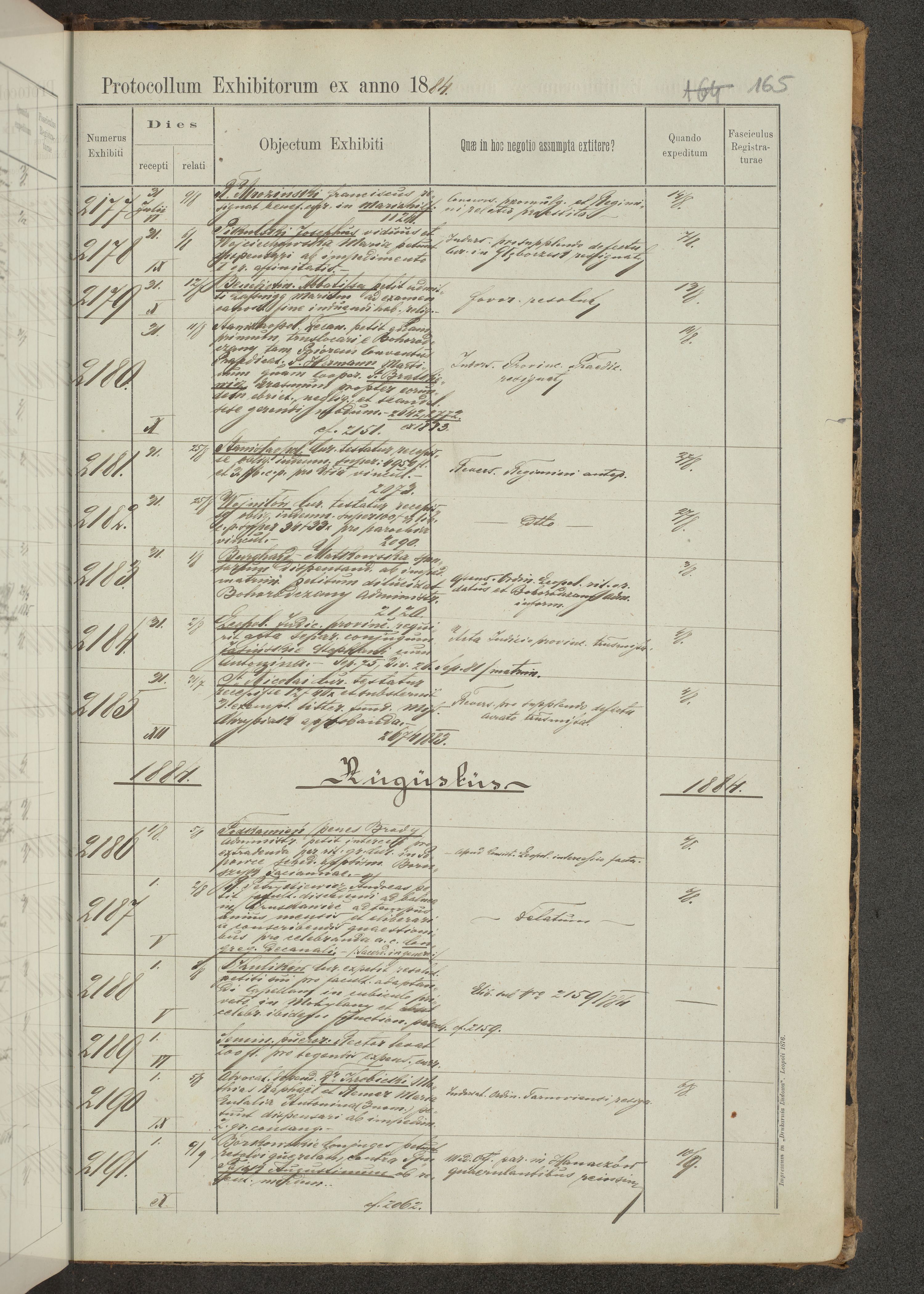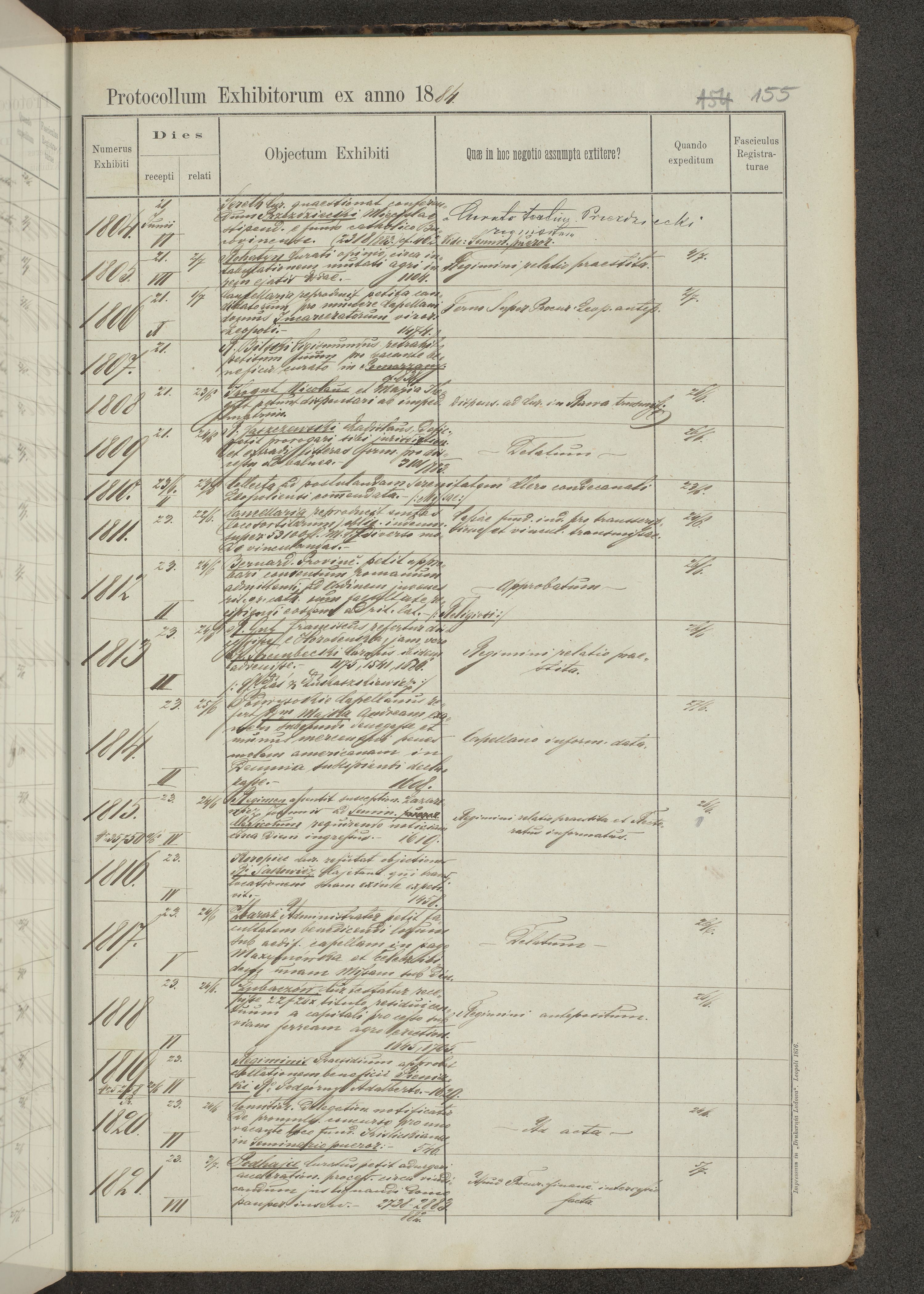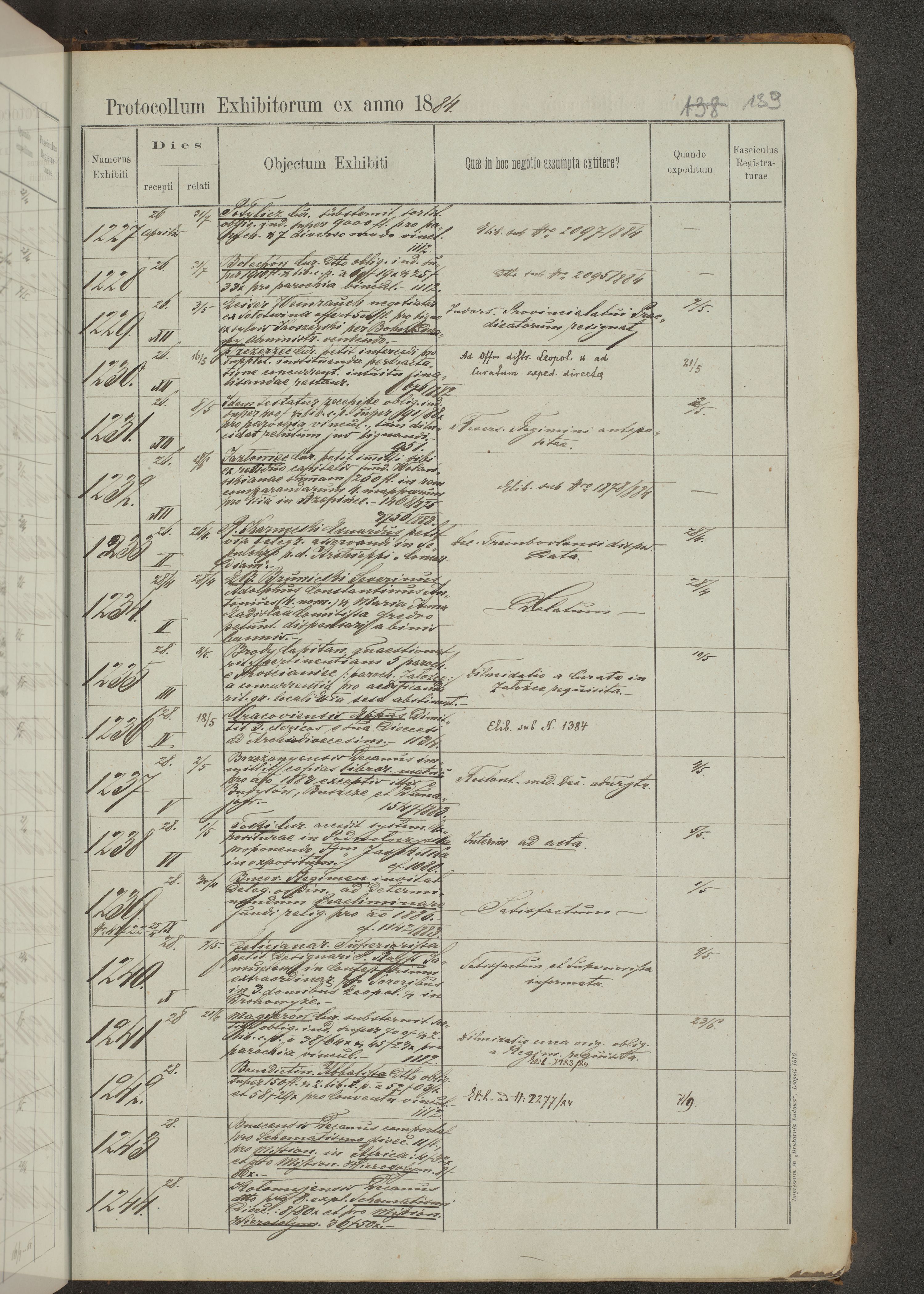 Protocollon exhibitorum in Ecclesiasticis ex anno 1883-1884