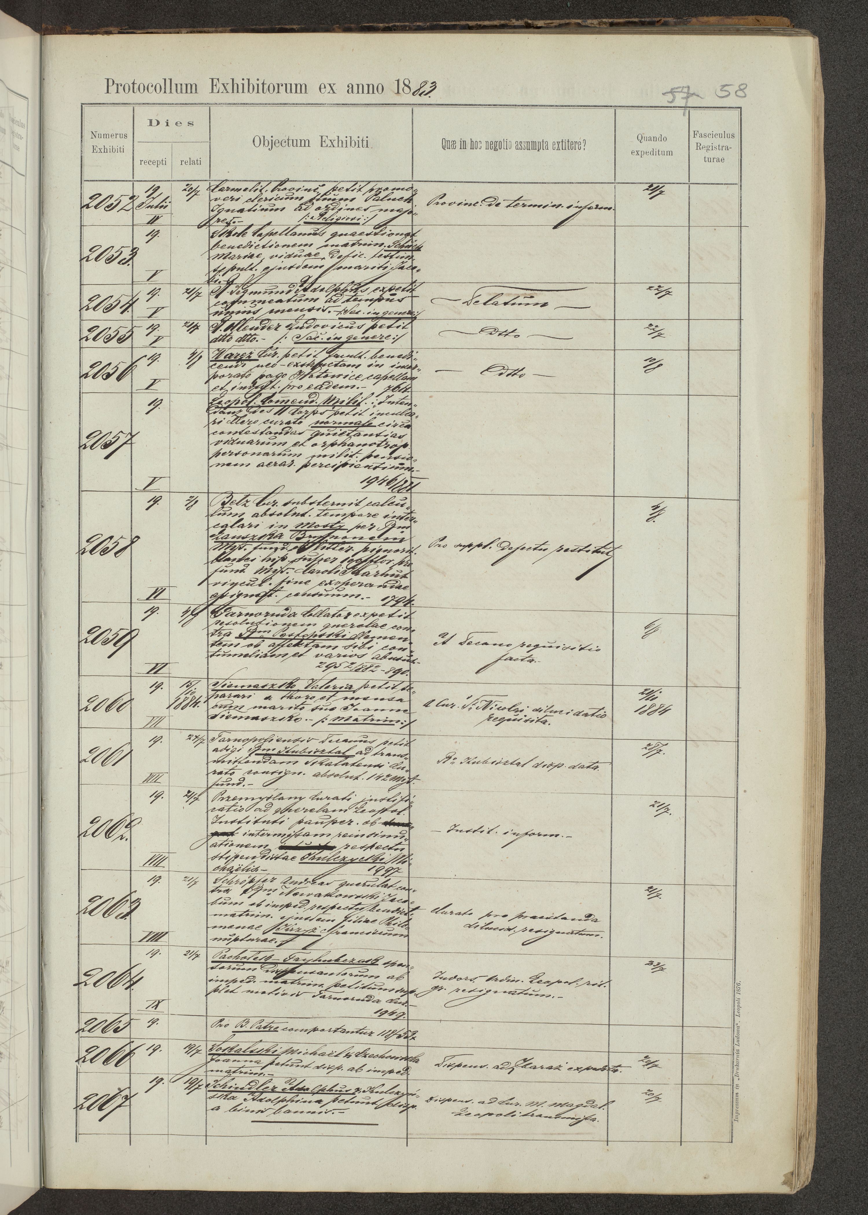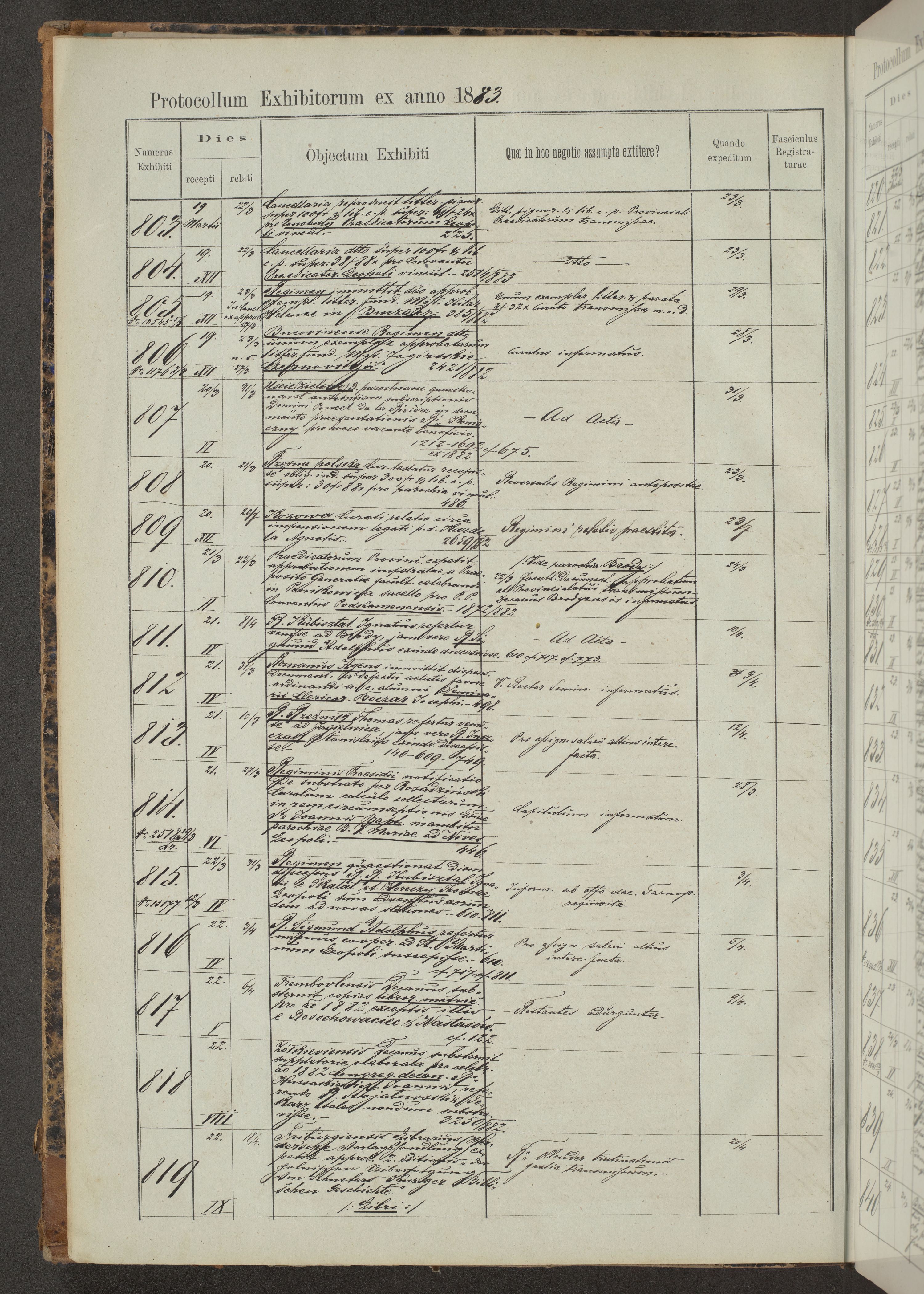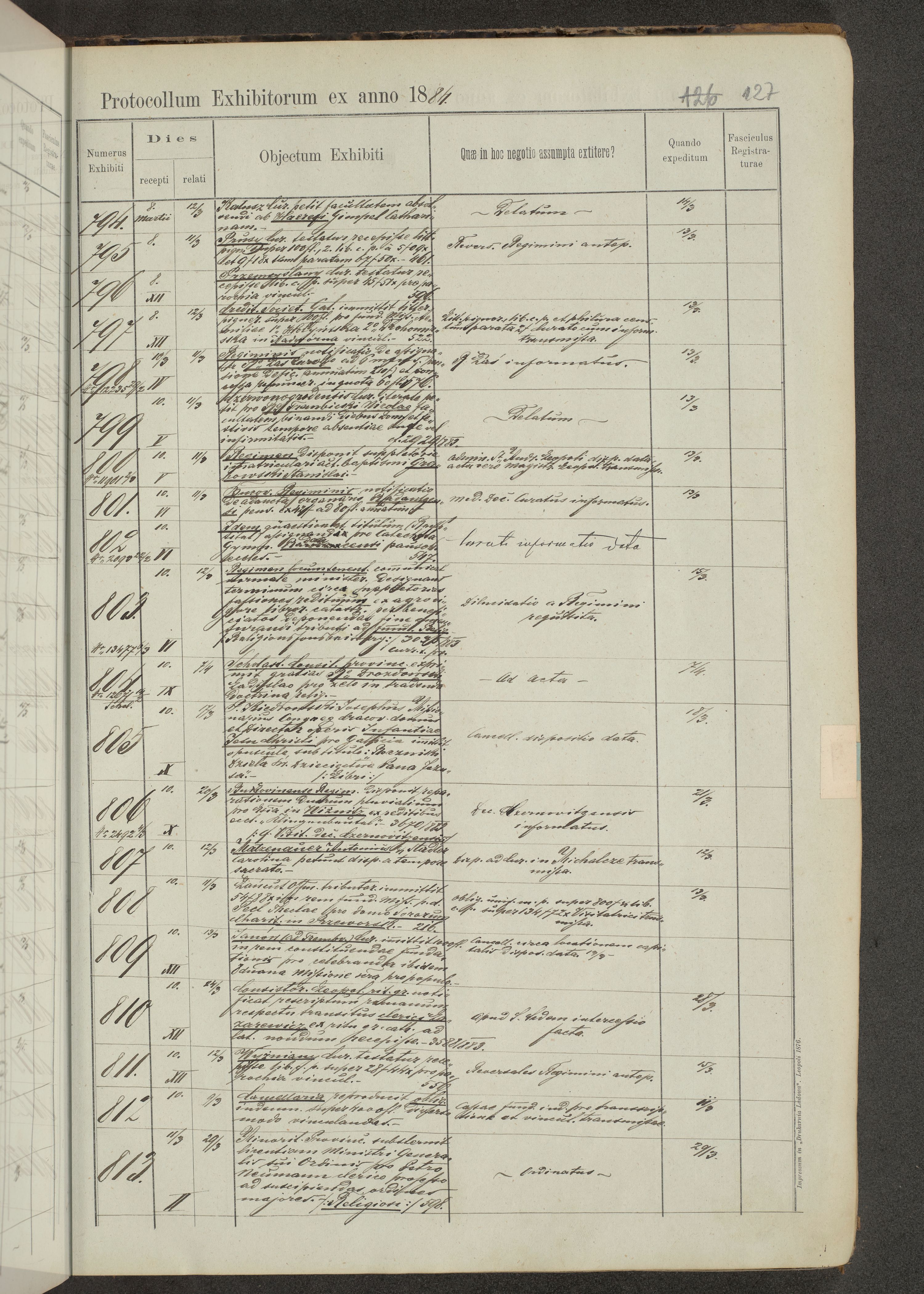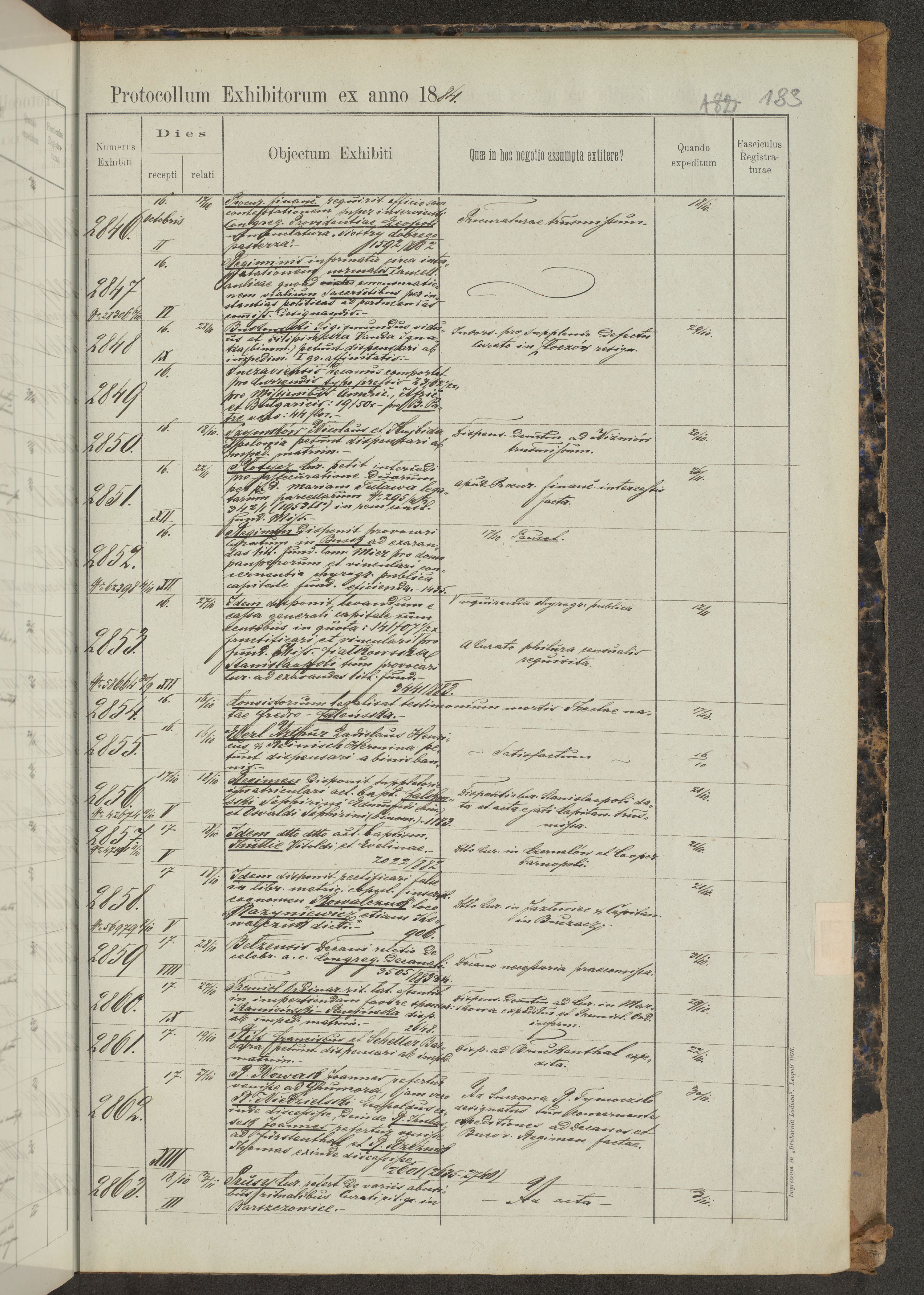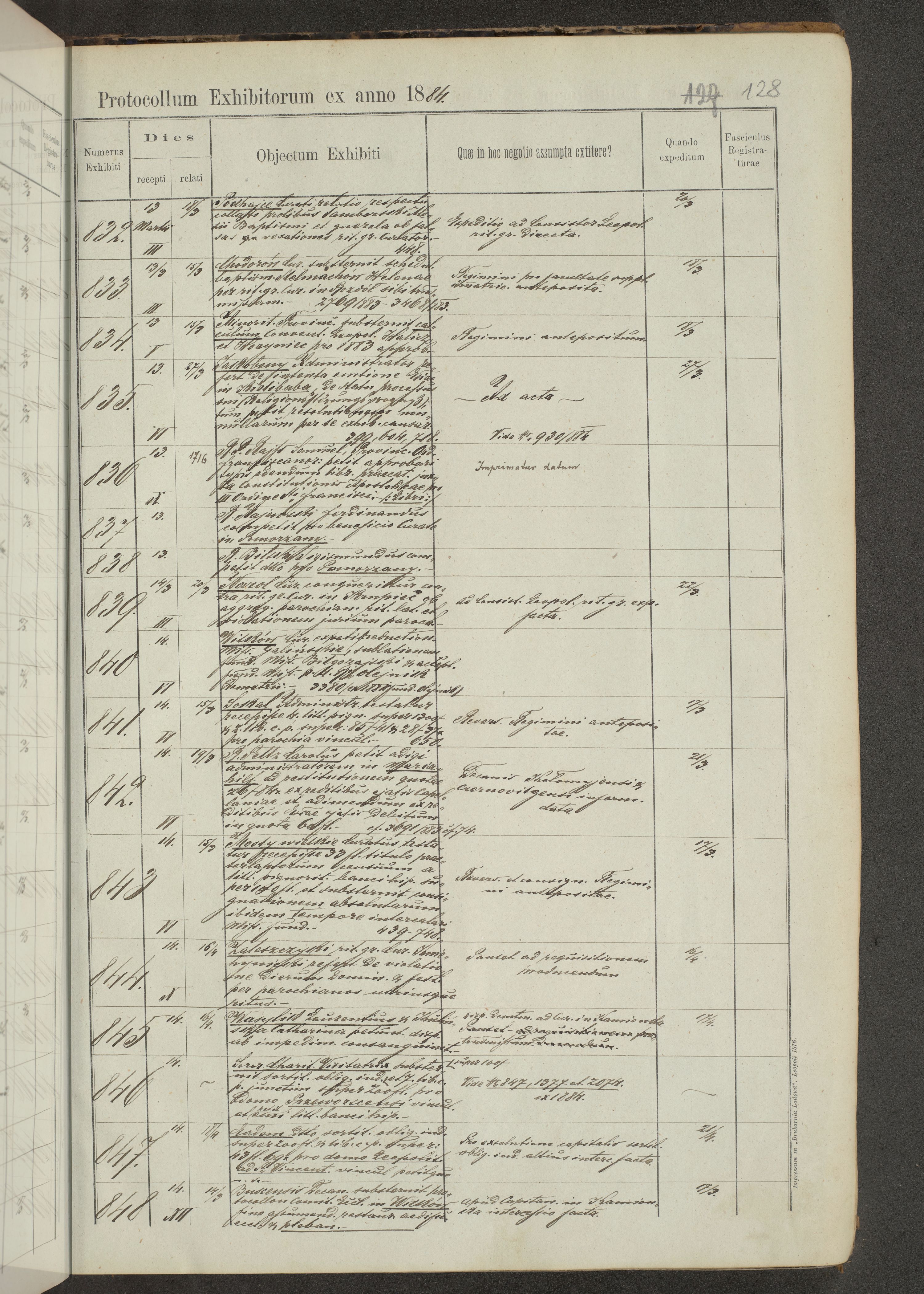 Protocollon exhibitorum in Ecclesiasticis ex anno 1883-1884