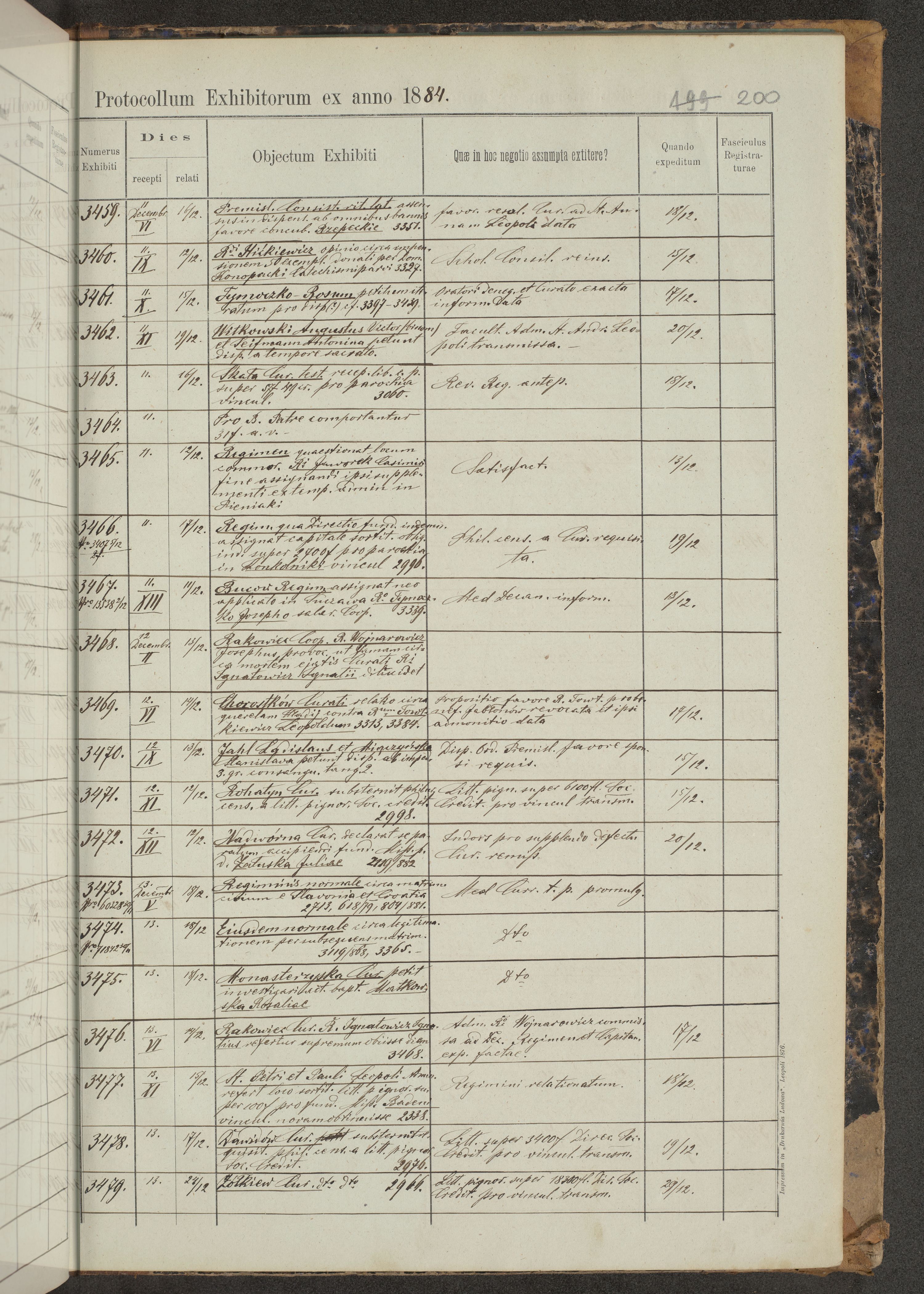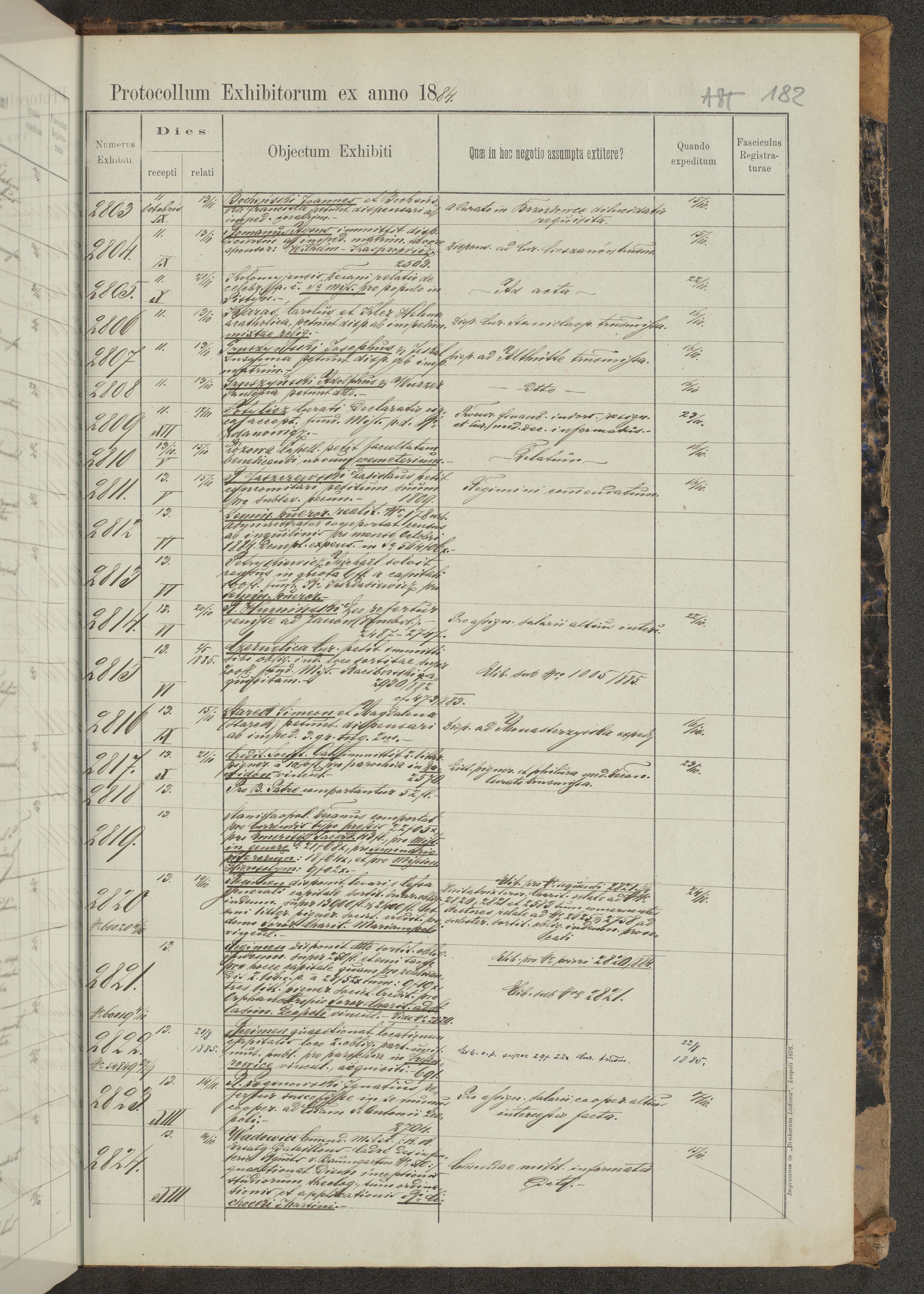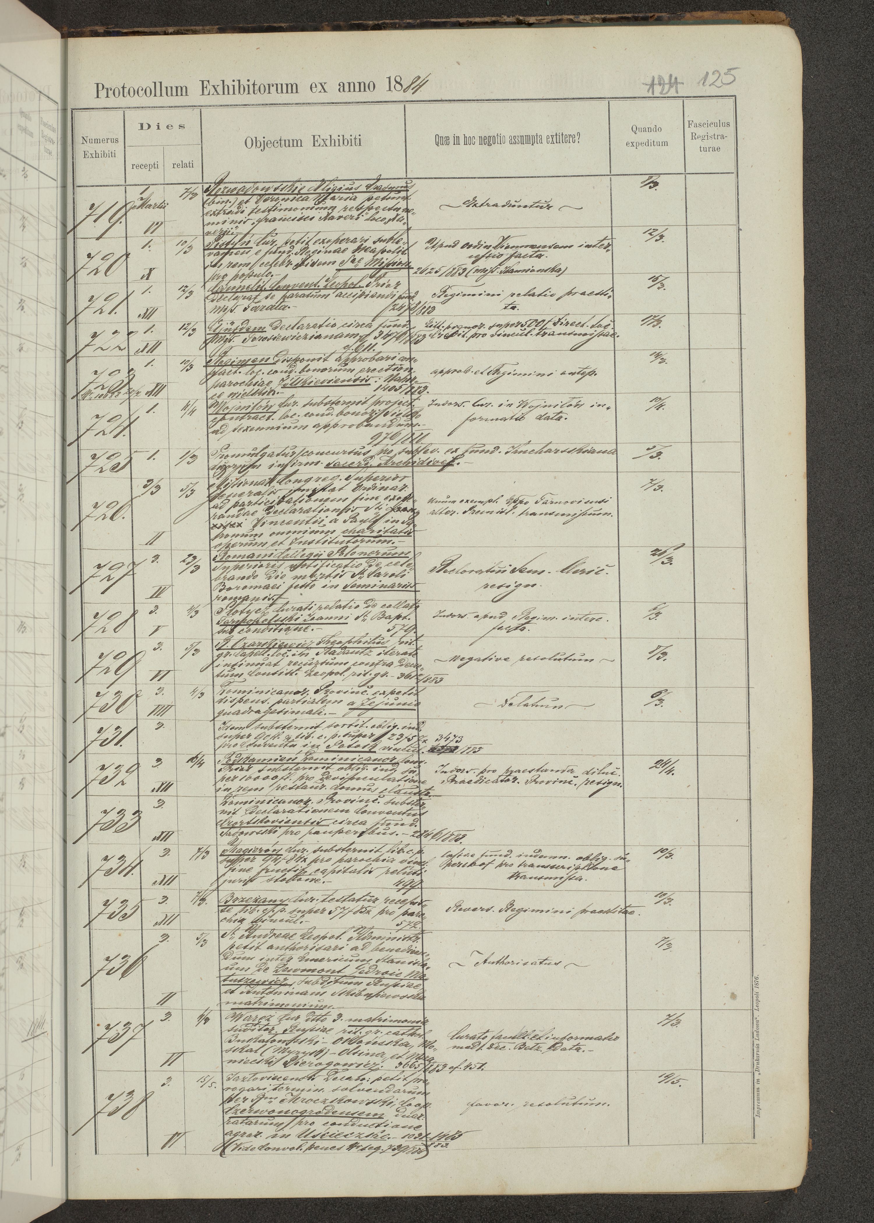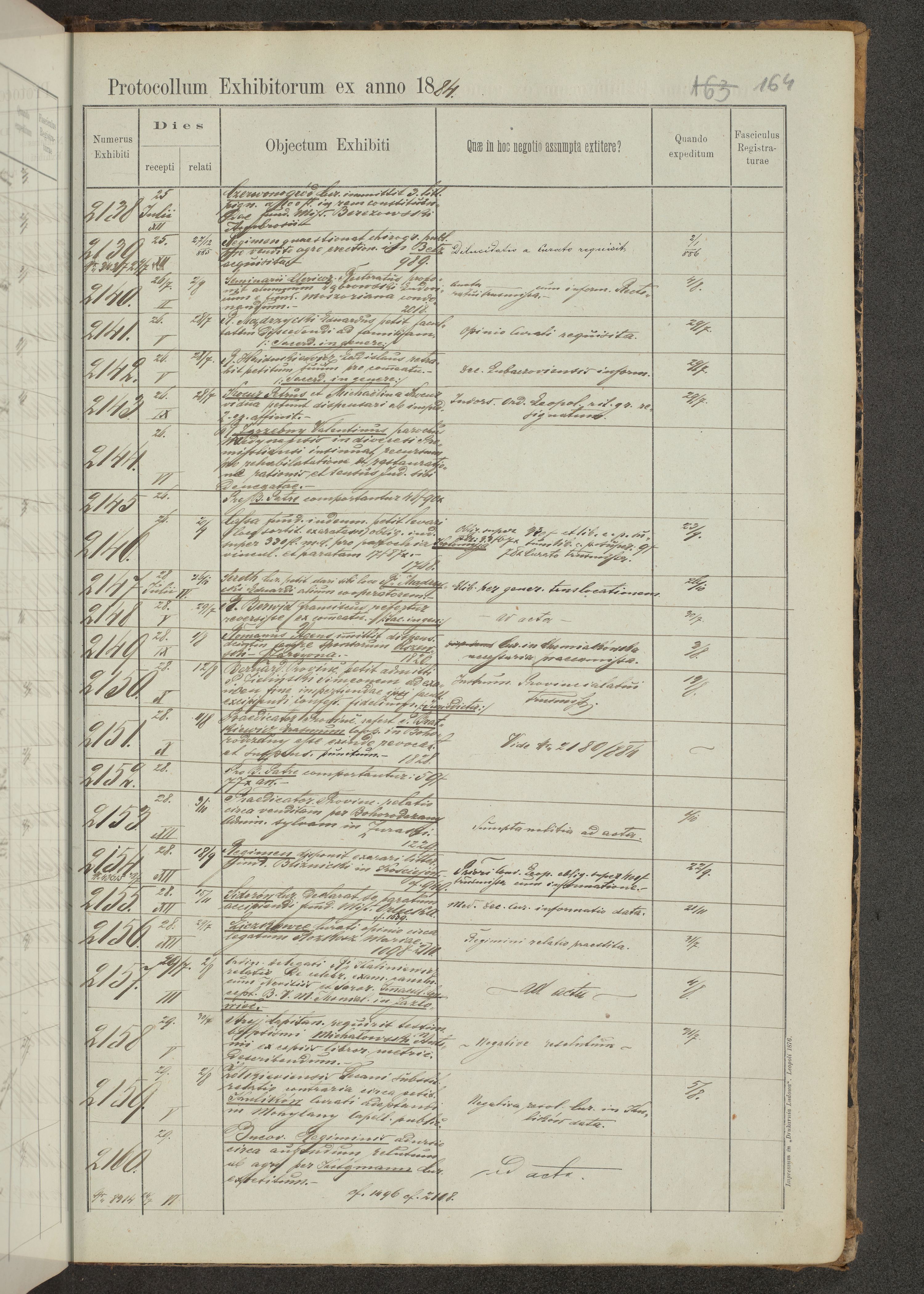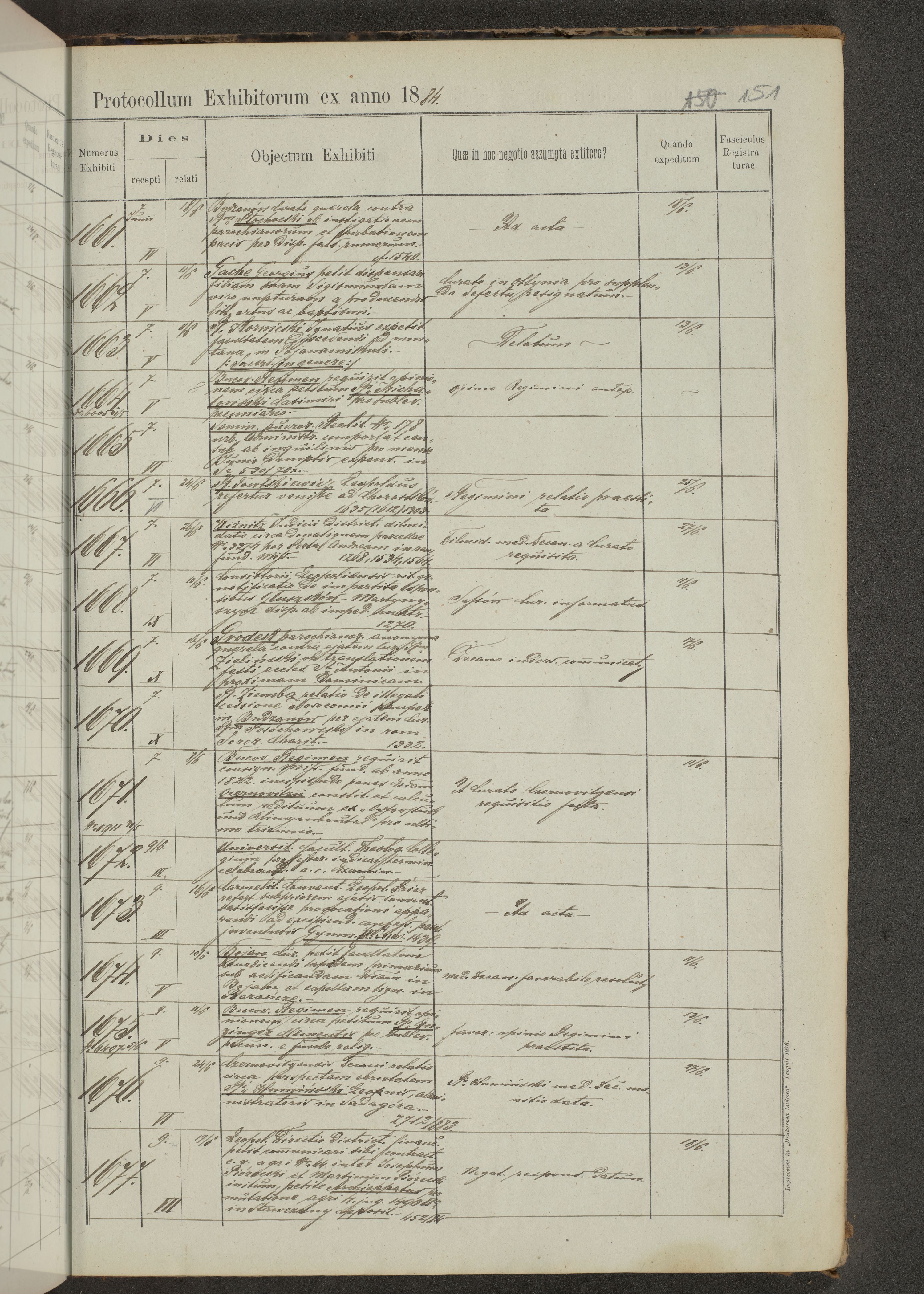 Protocollon exhibitorum in Ecclesiasticis ex anno 1883-1884