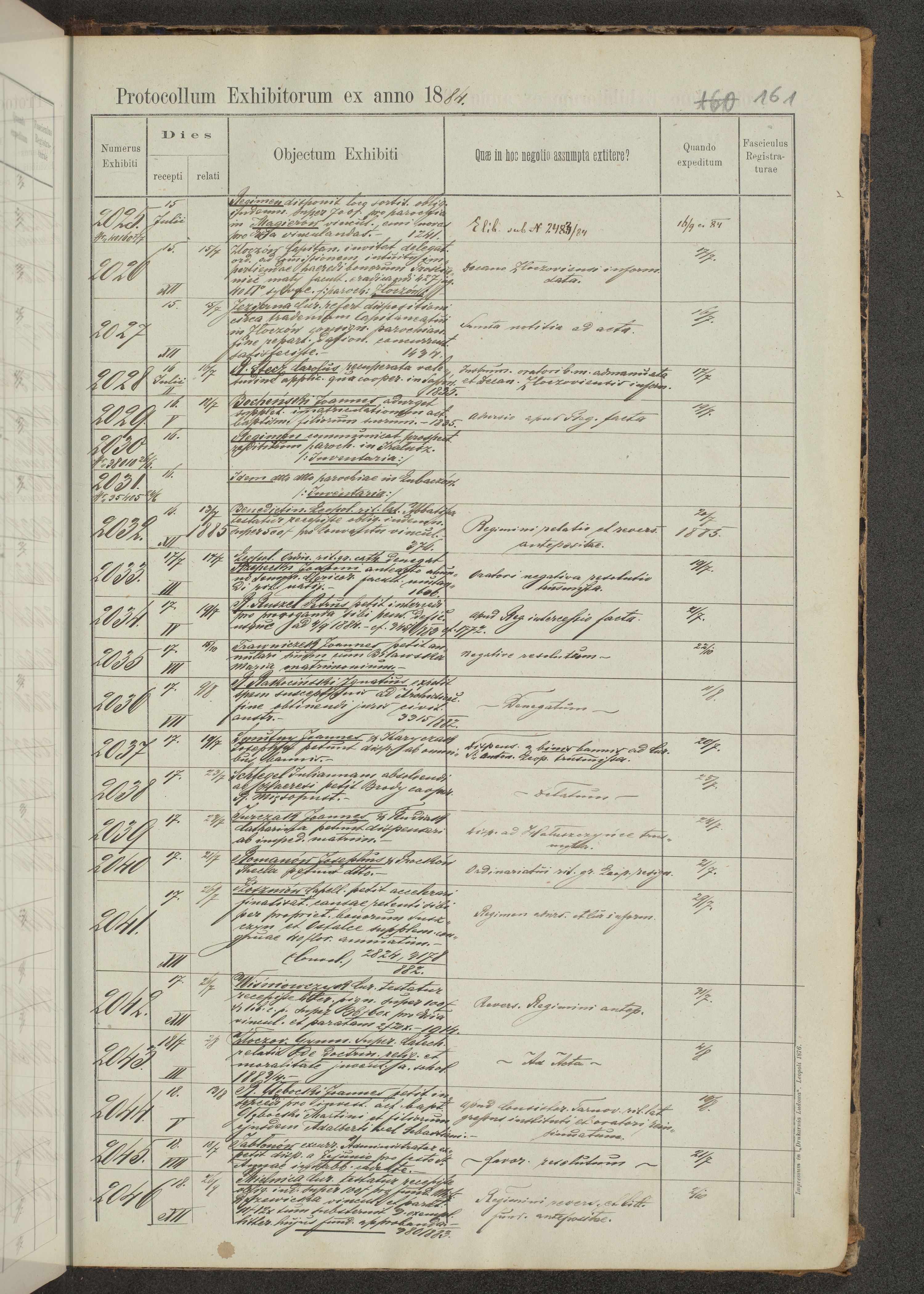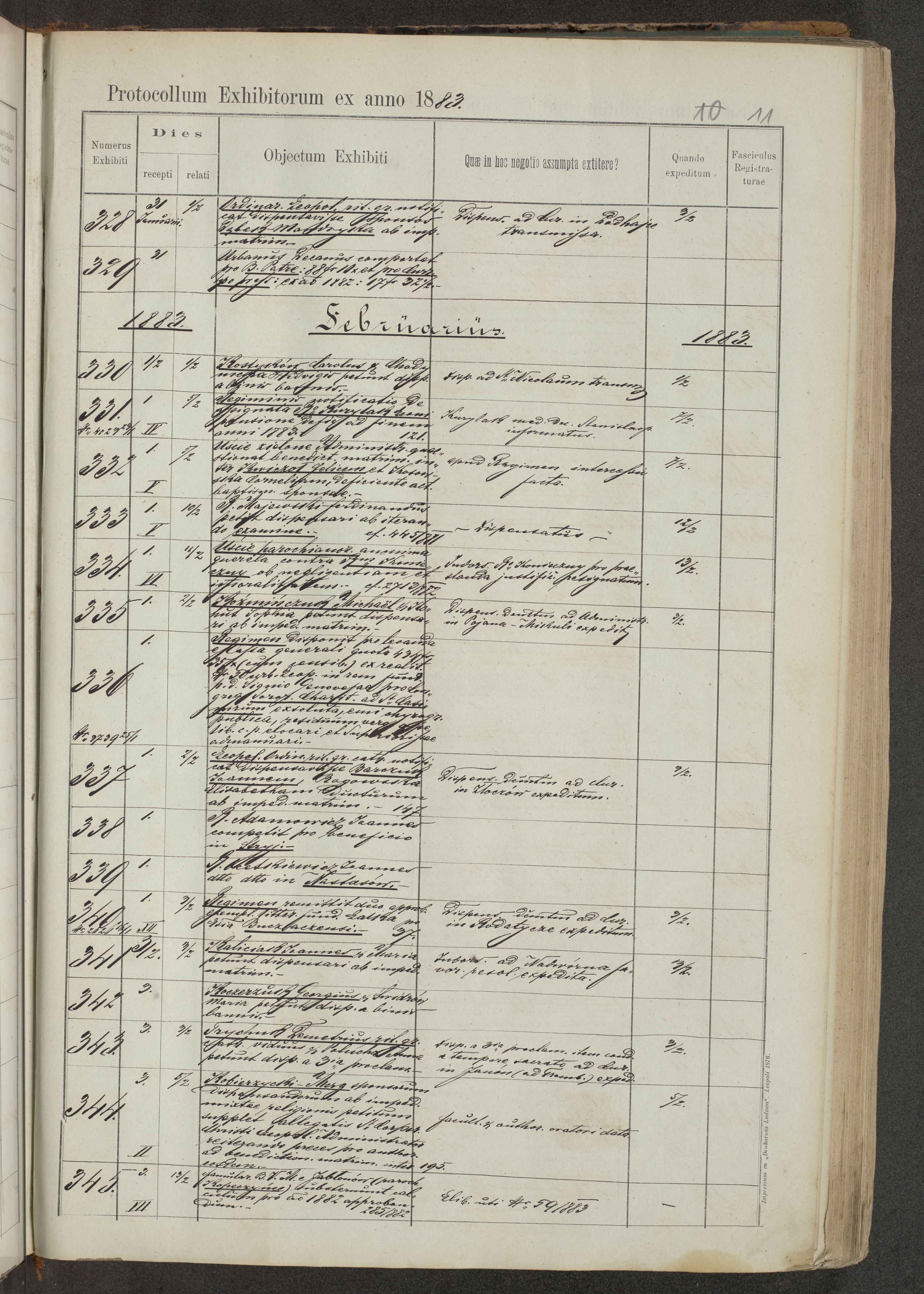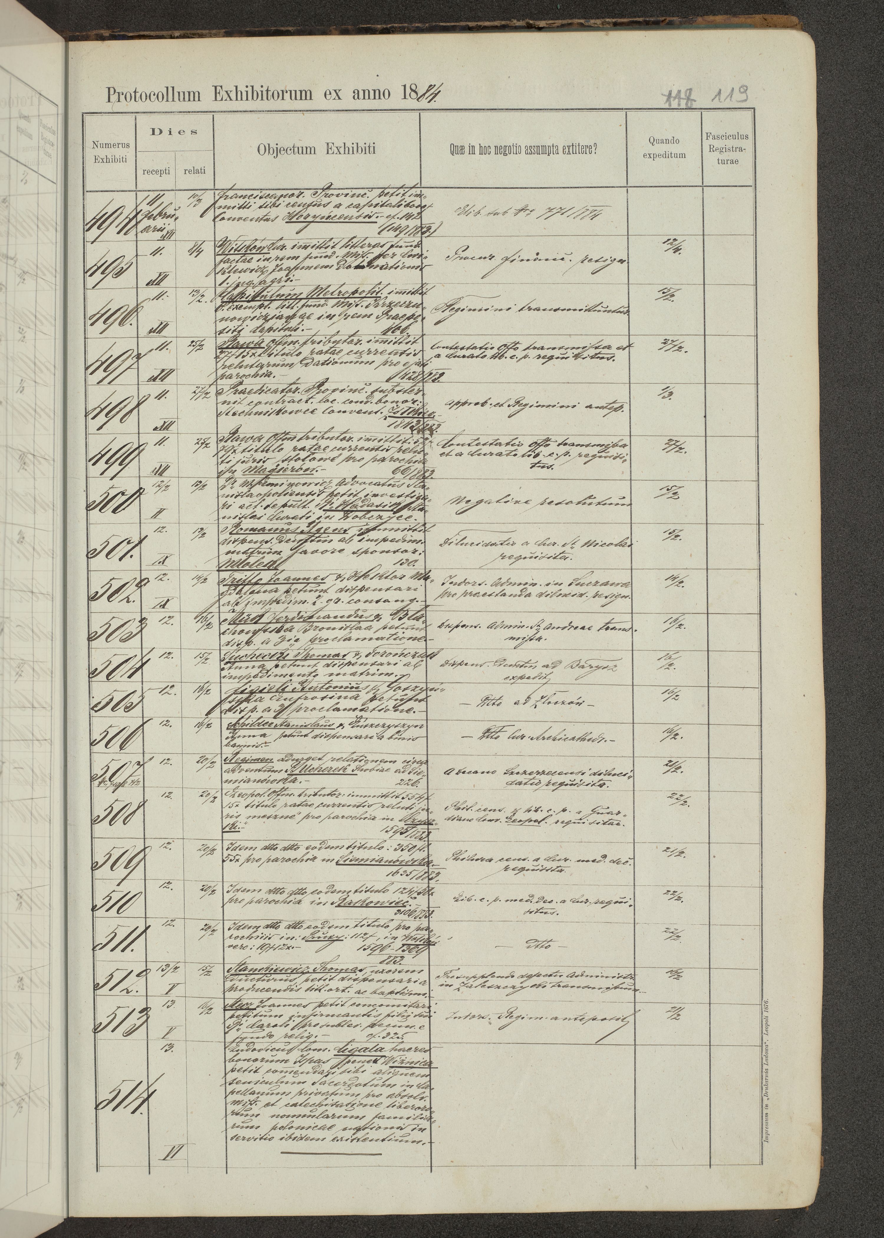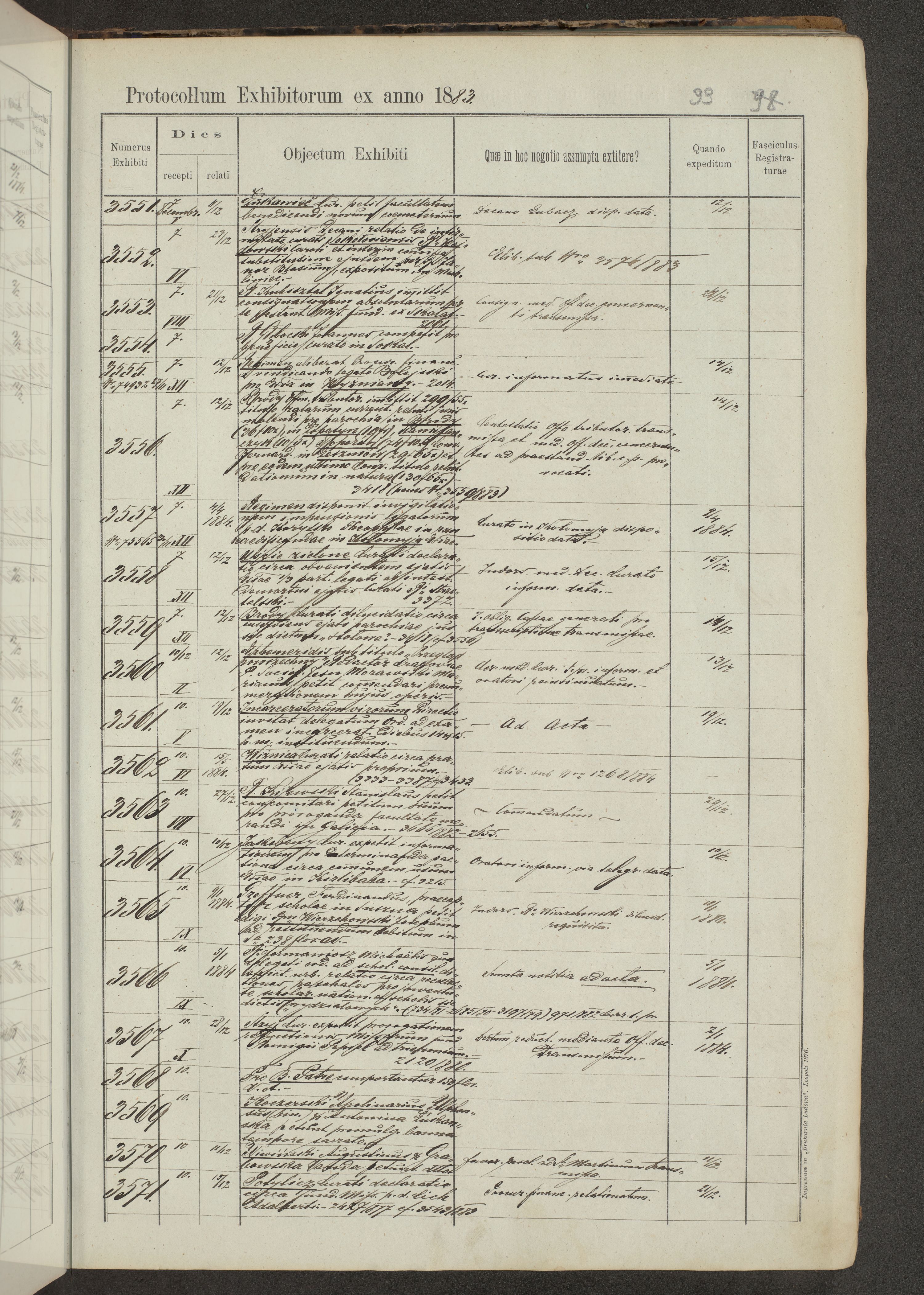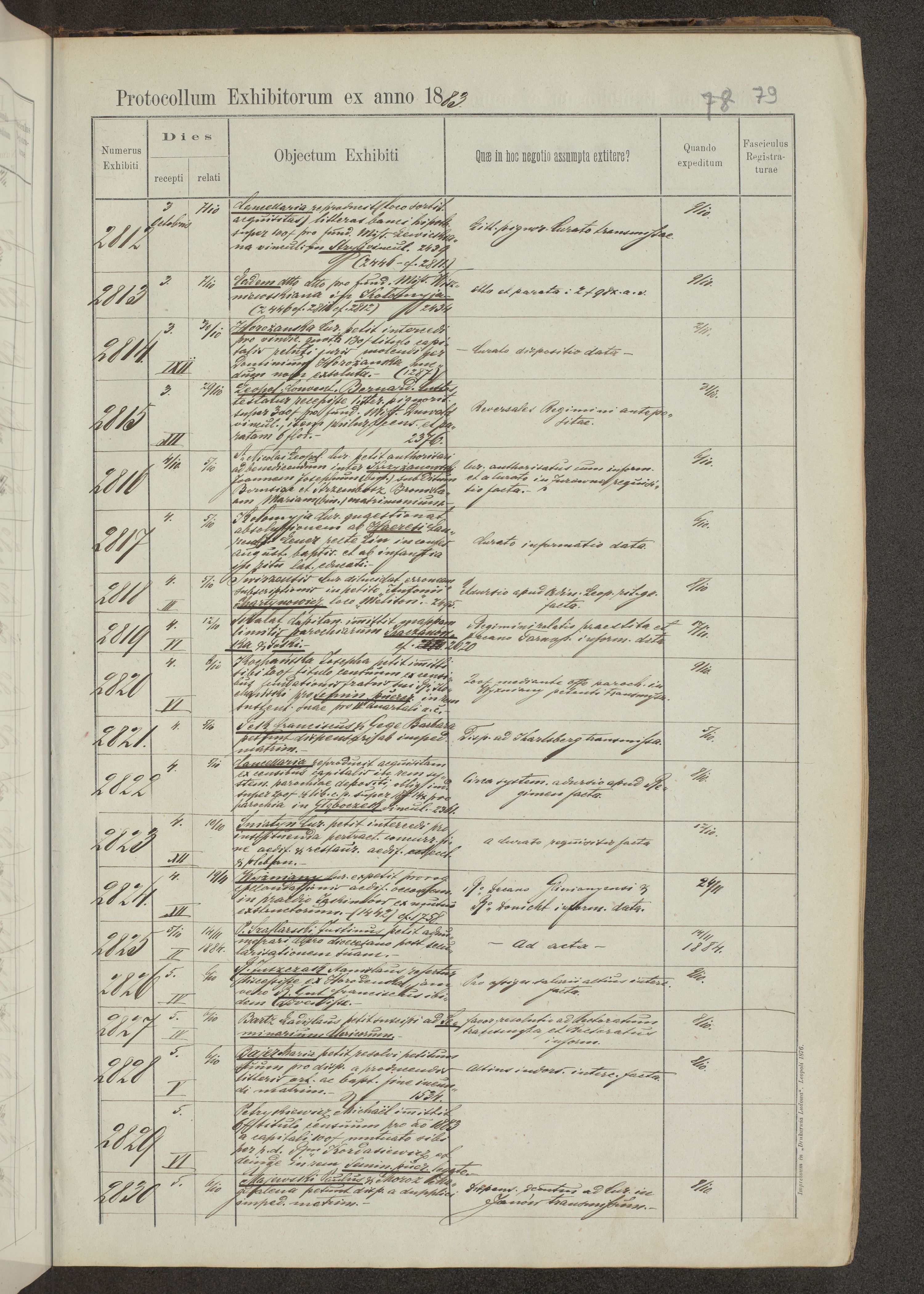 Protocollon exhibitorum in Ecclesiasticis ex anno 1883-1884