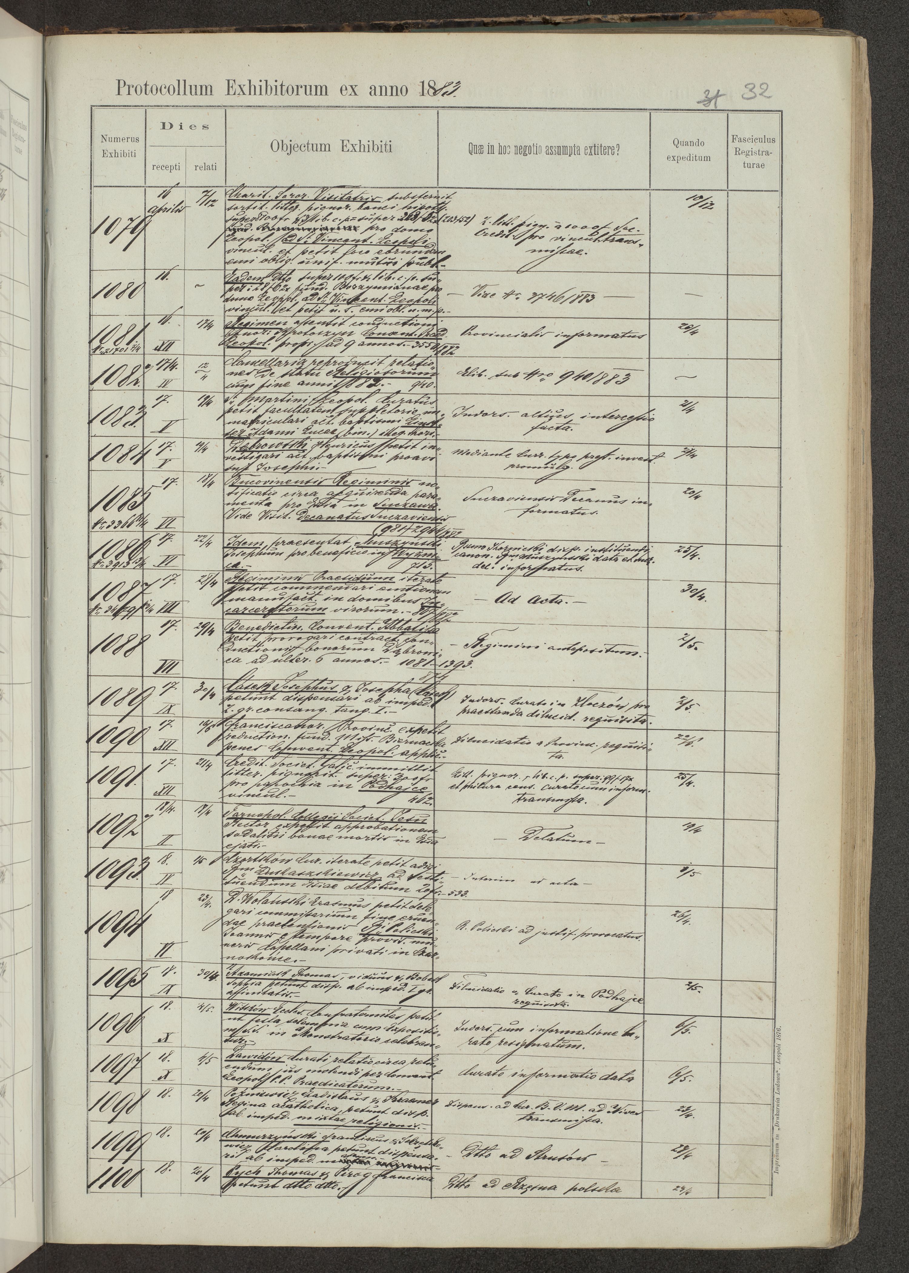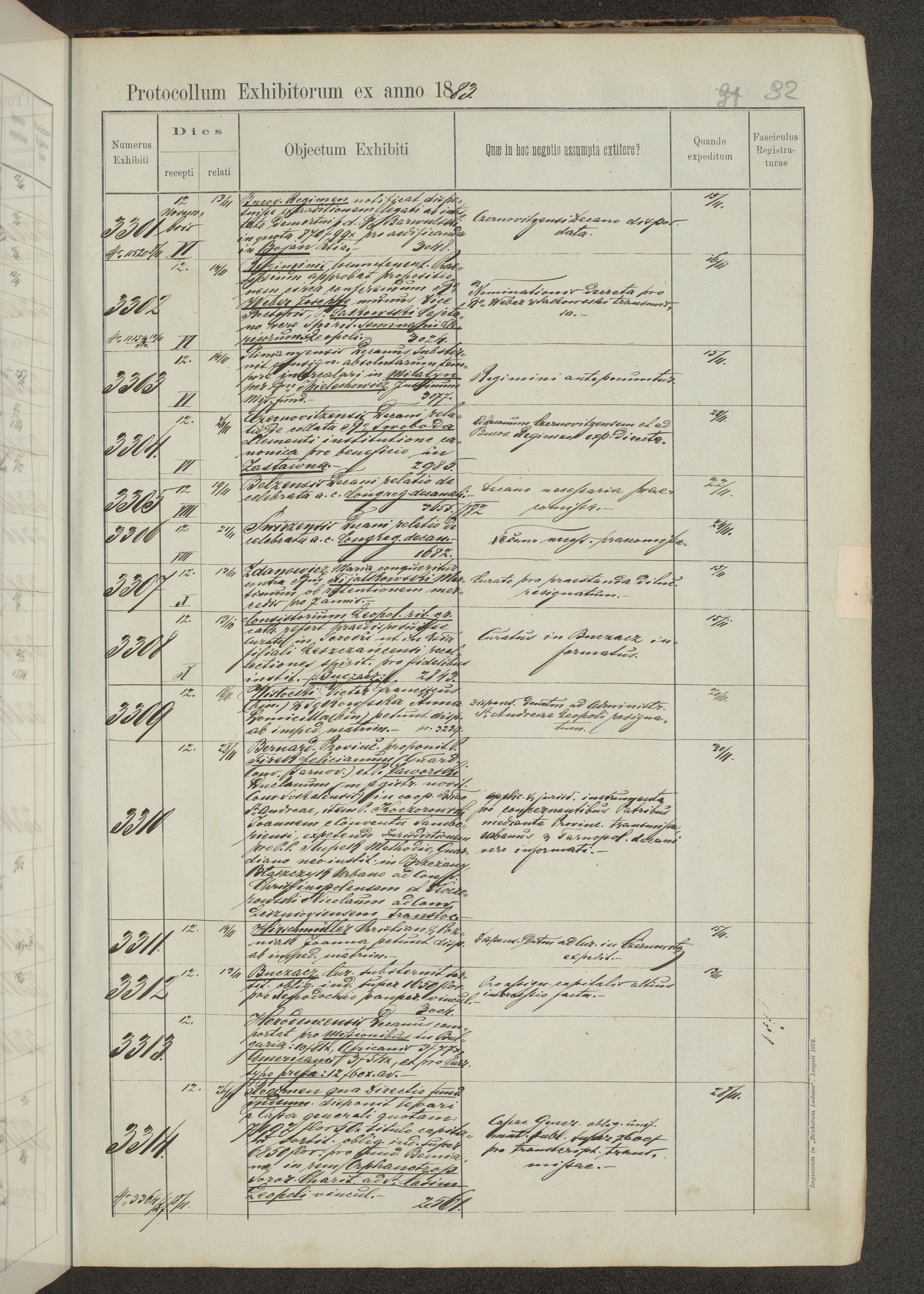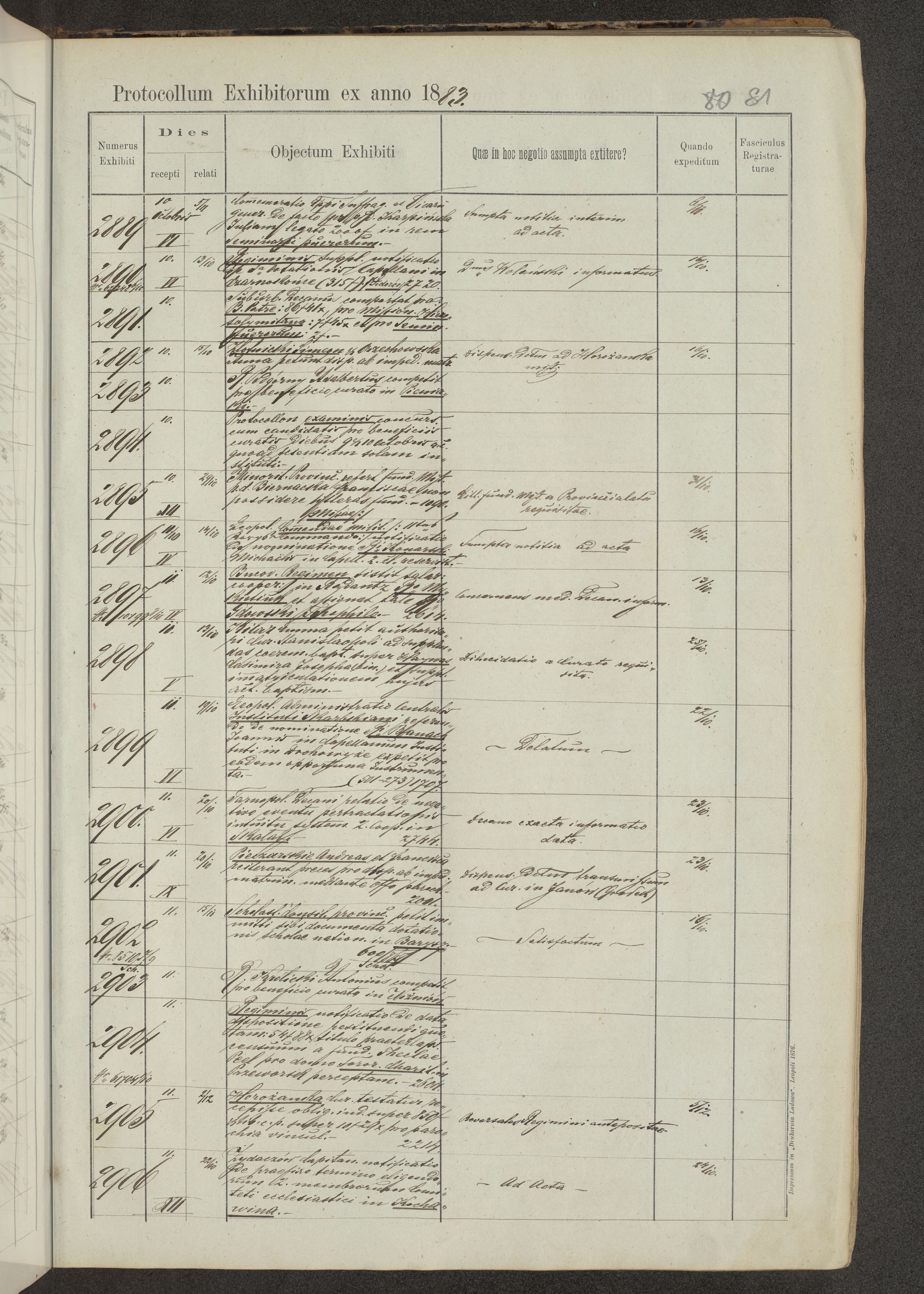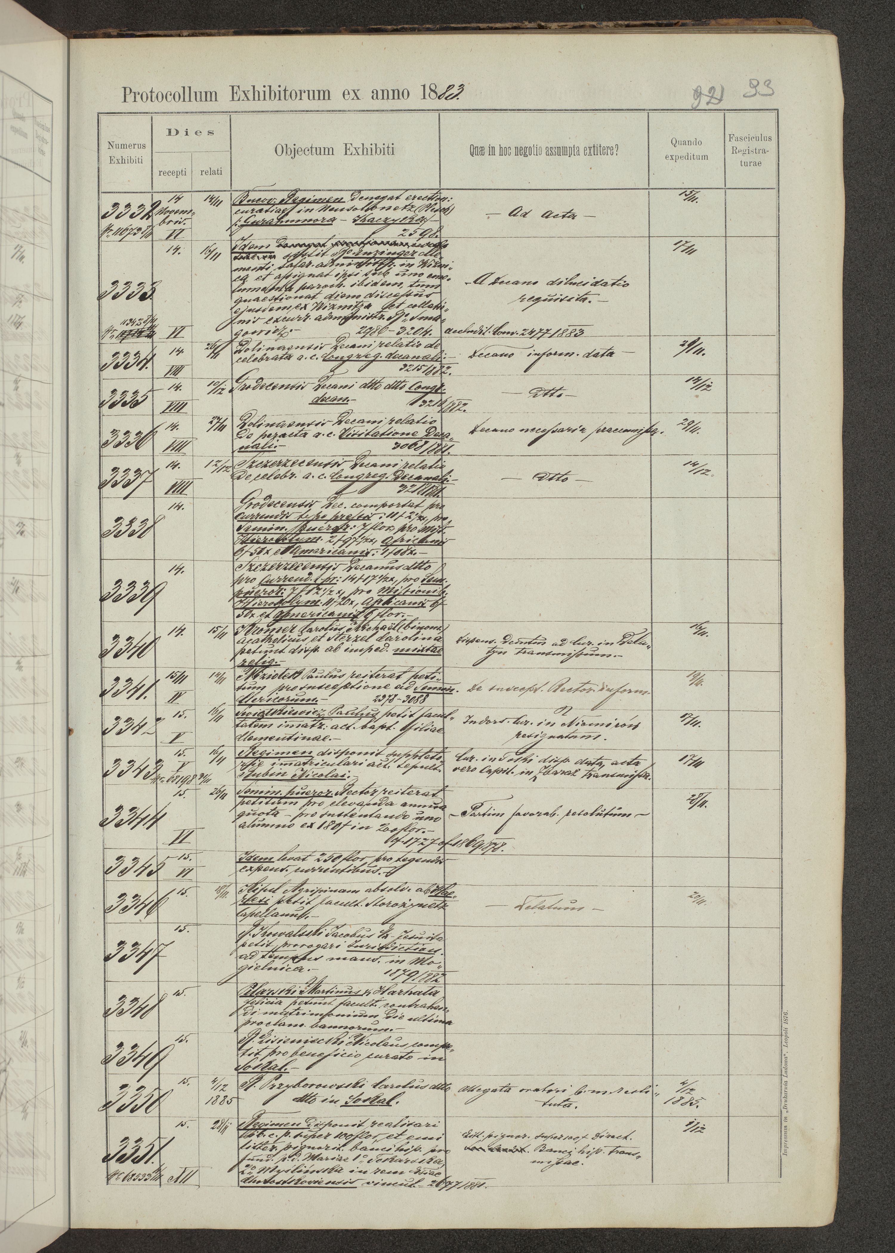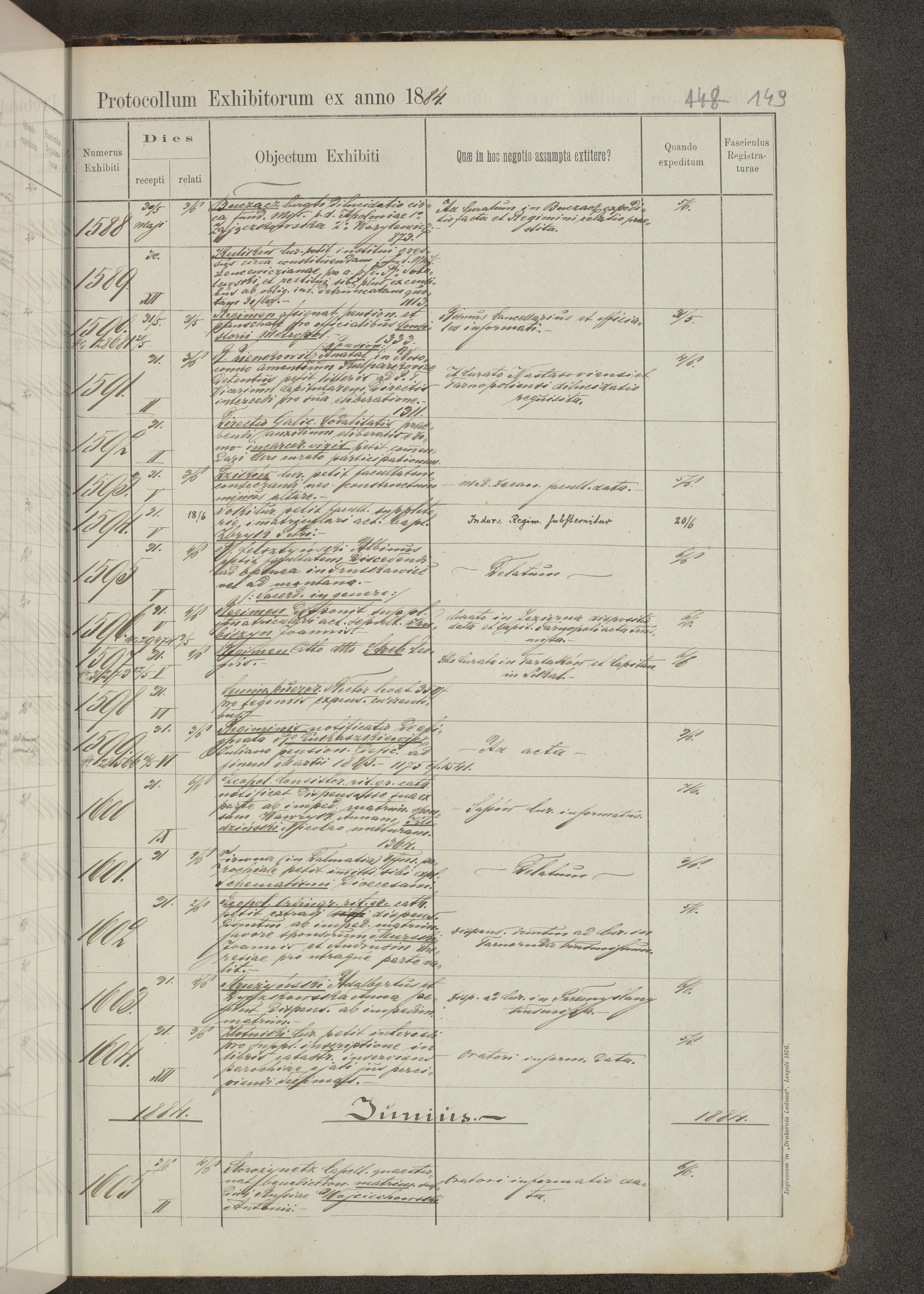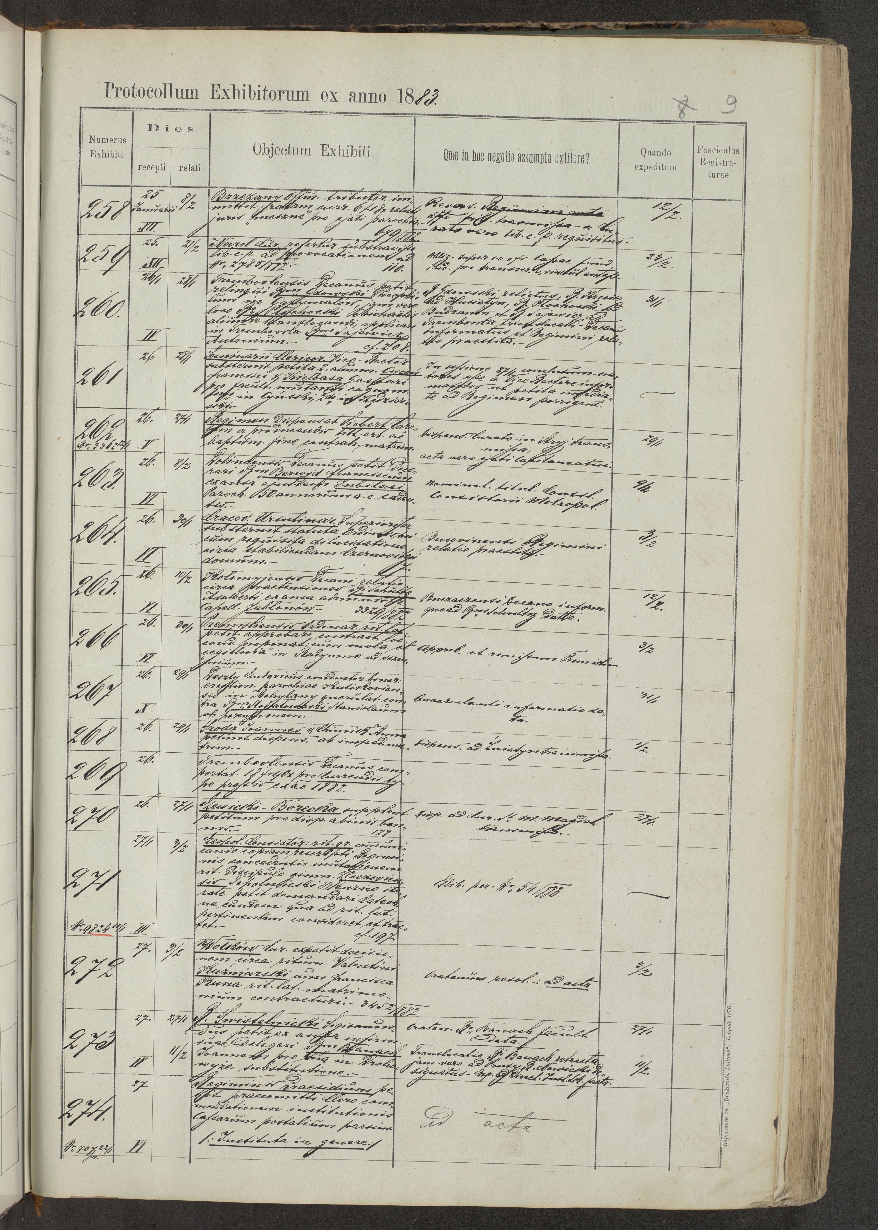 Protocollon exhibitorum in Ecclesiasticis ex anno 1883-1884