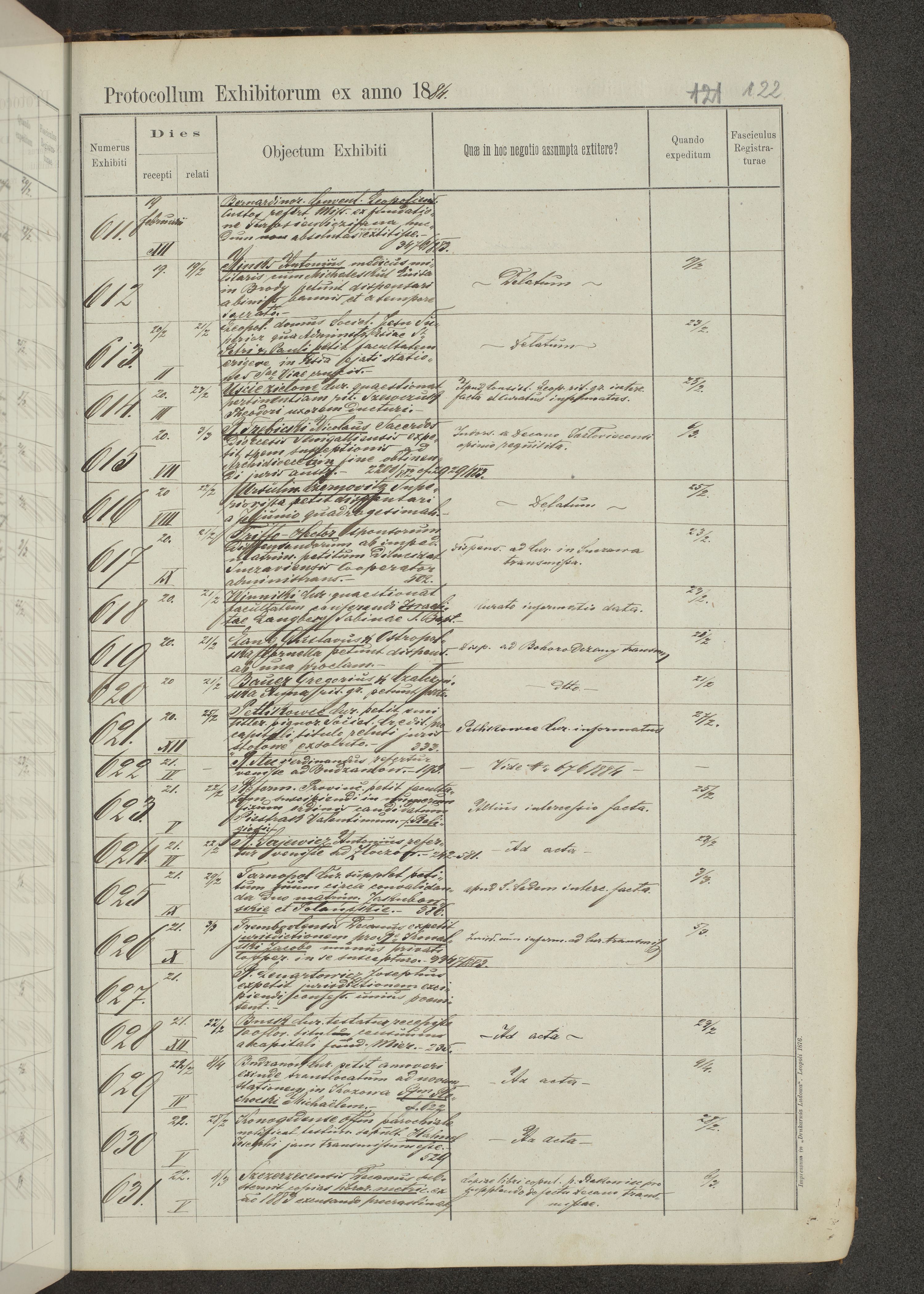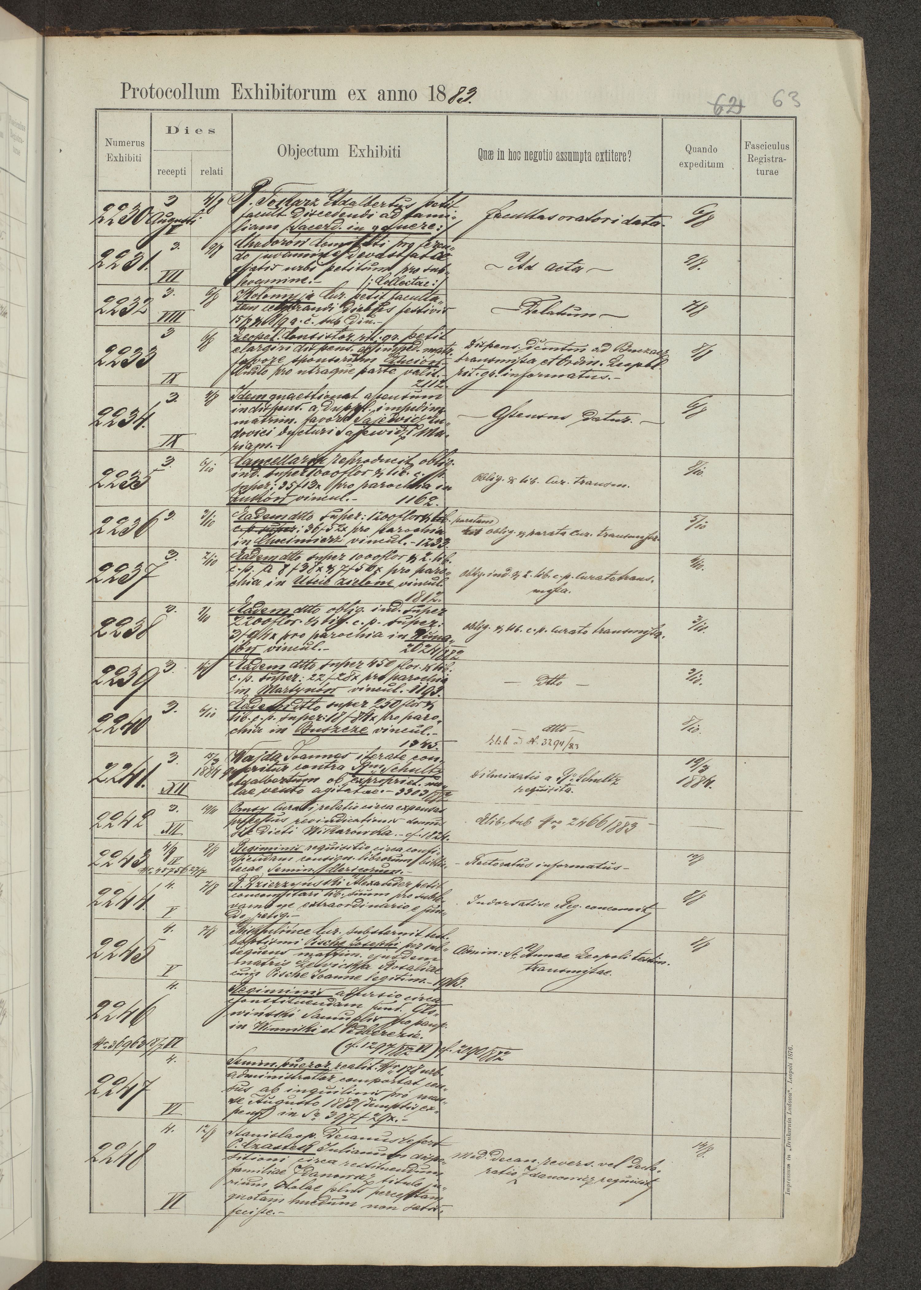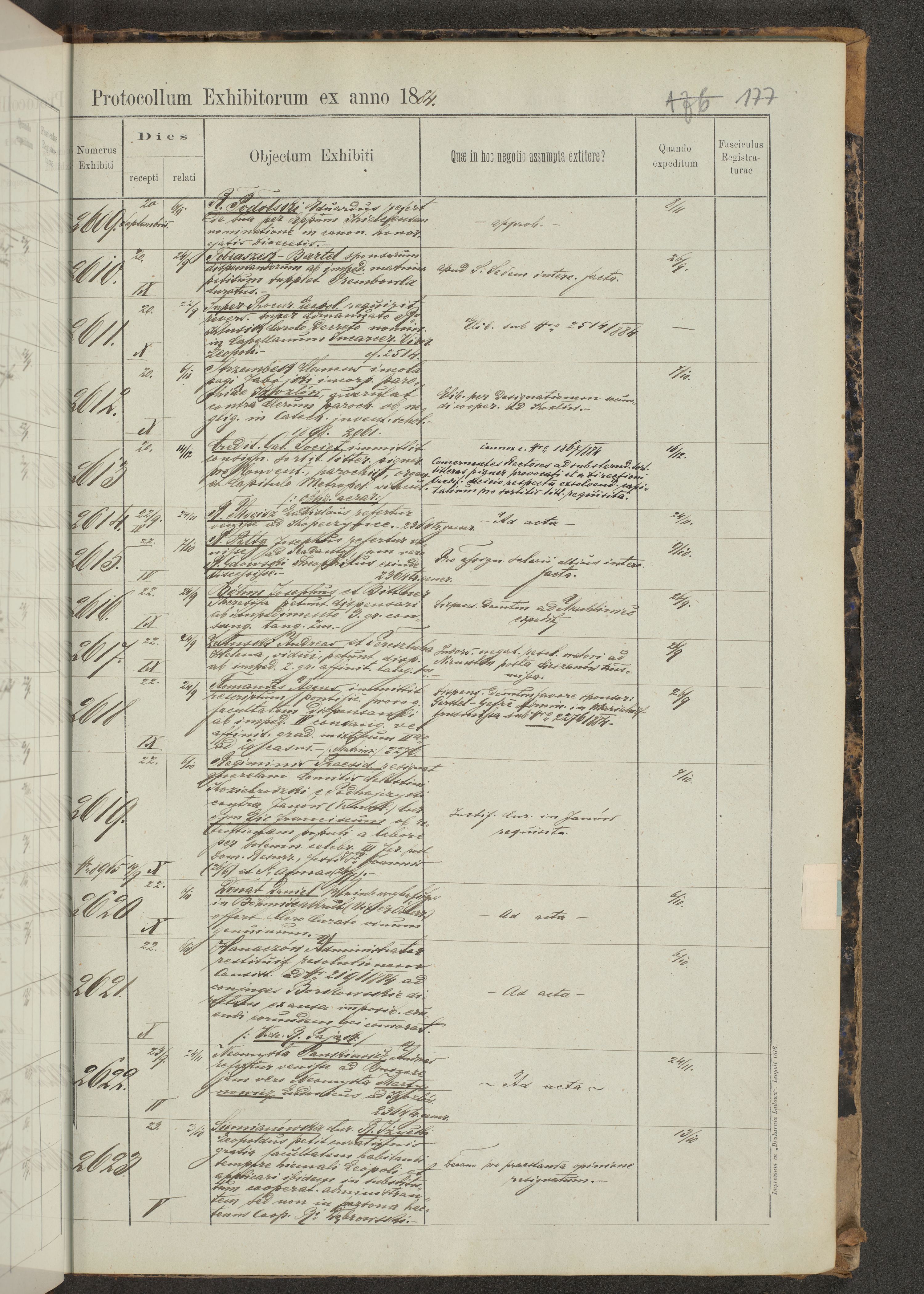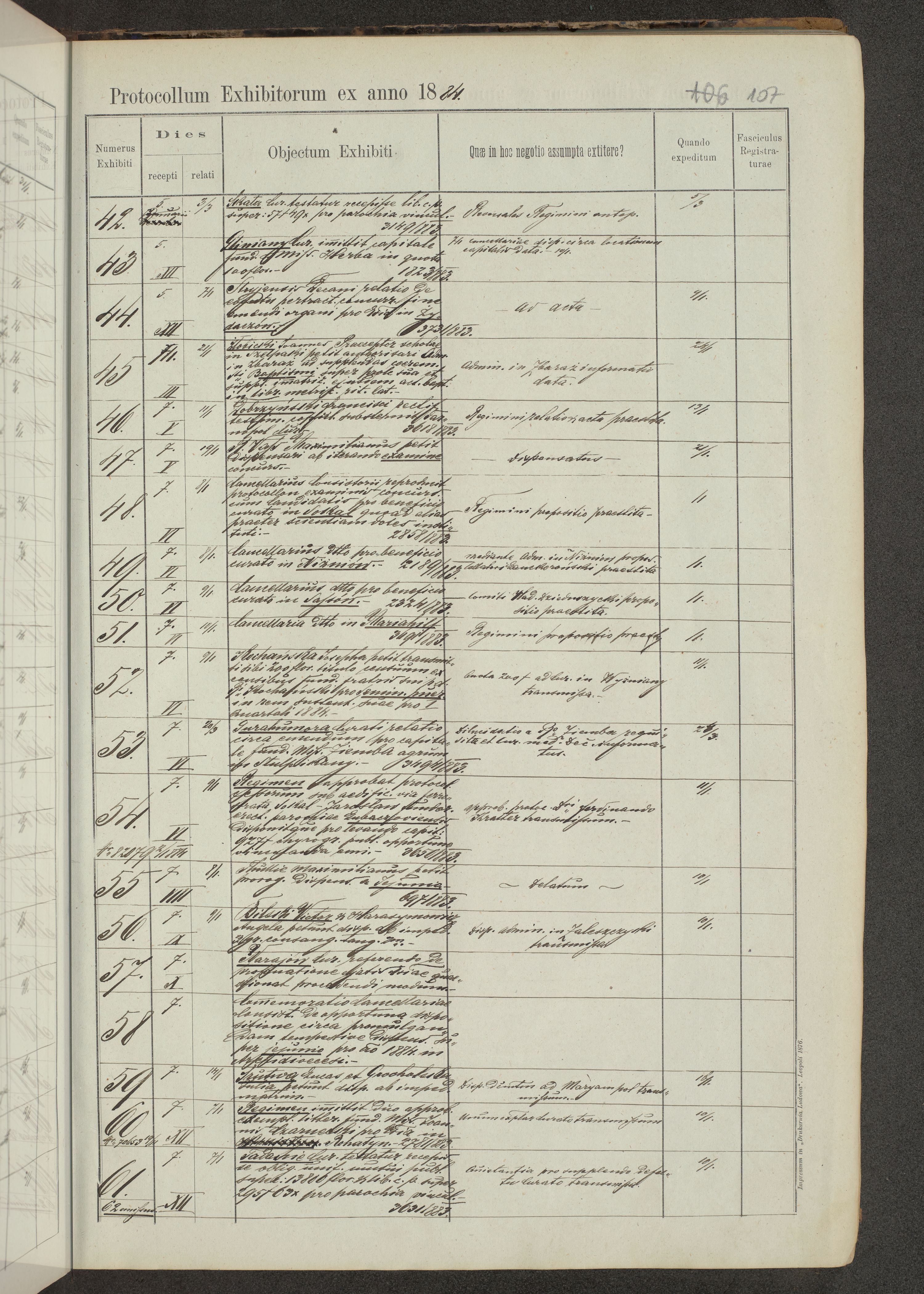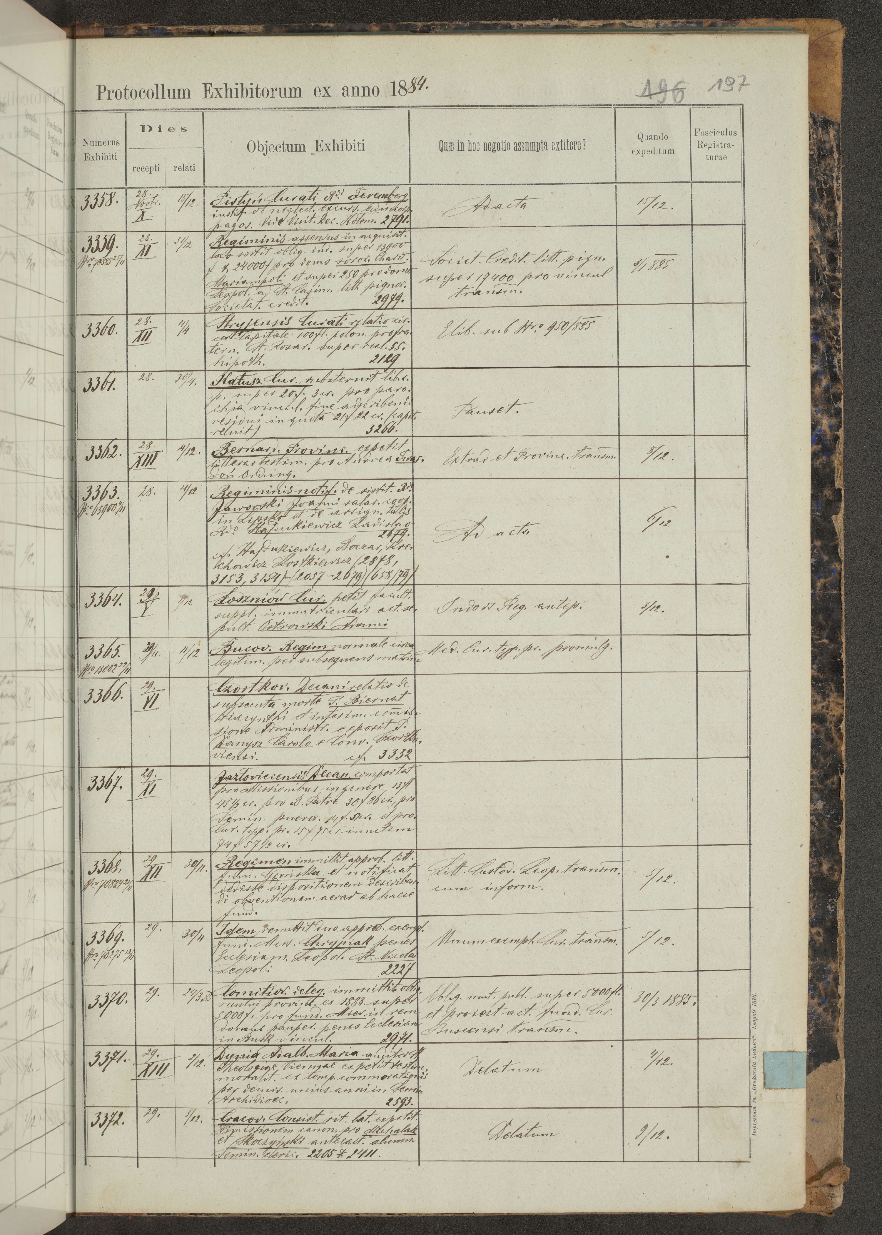 Protocollon exhibitorum in Ecclesiasticis ex anno 1883-1884