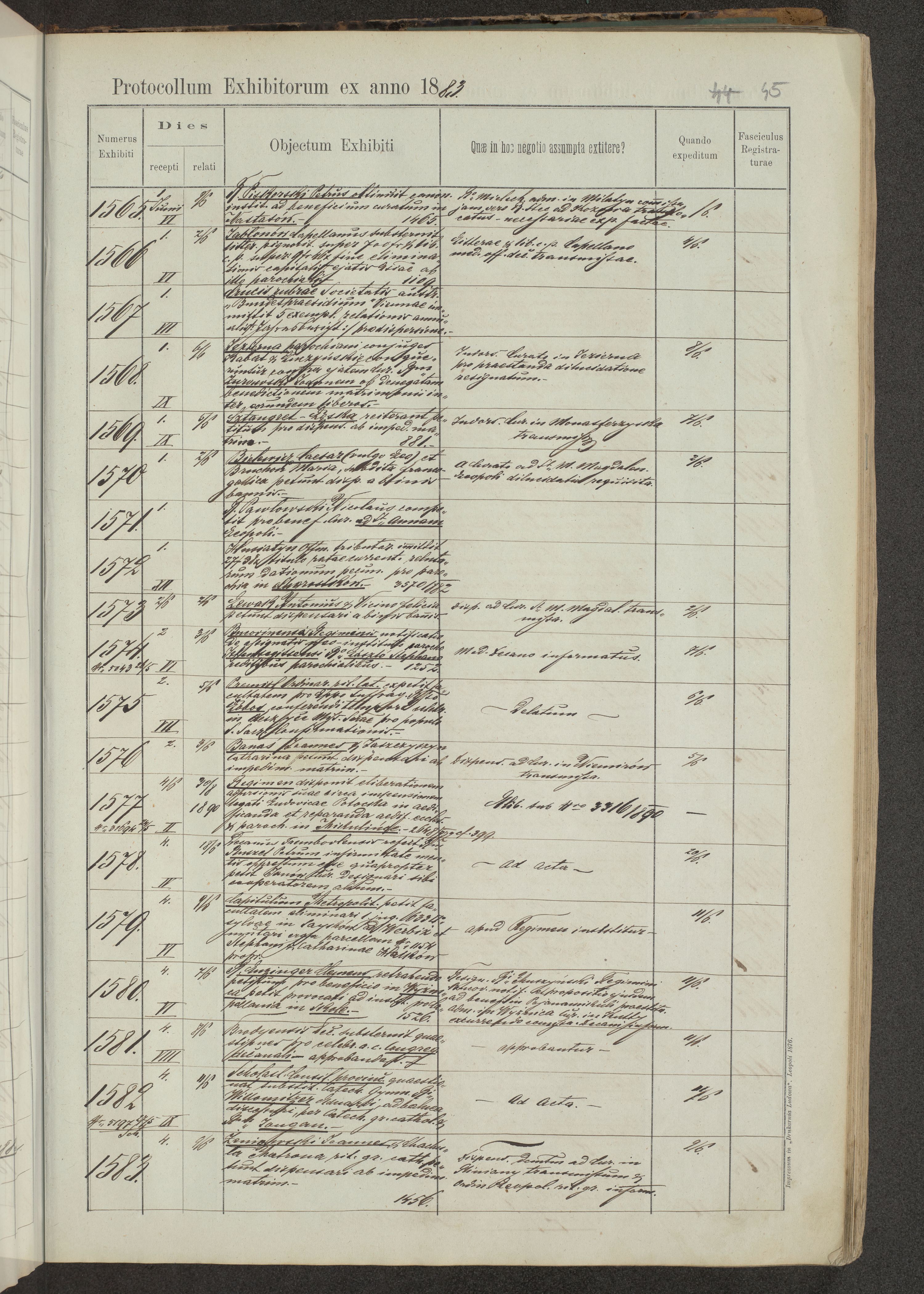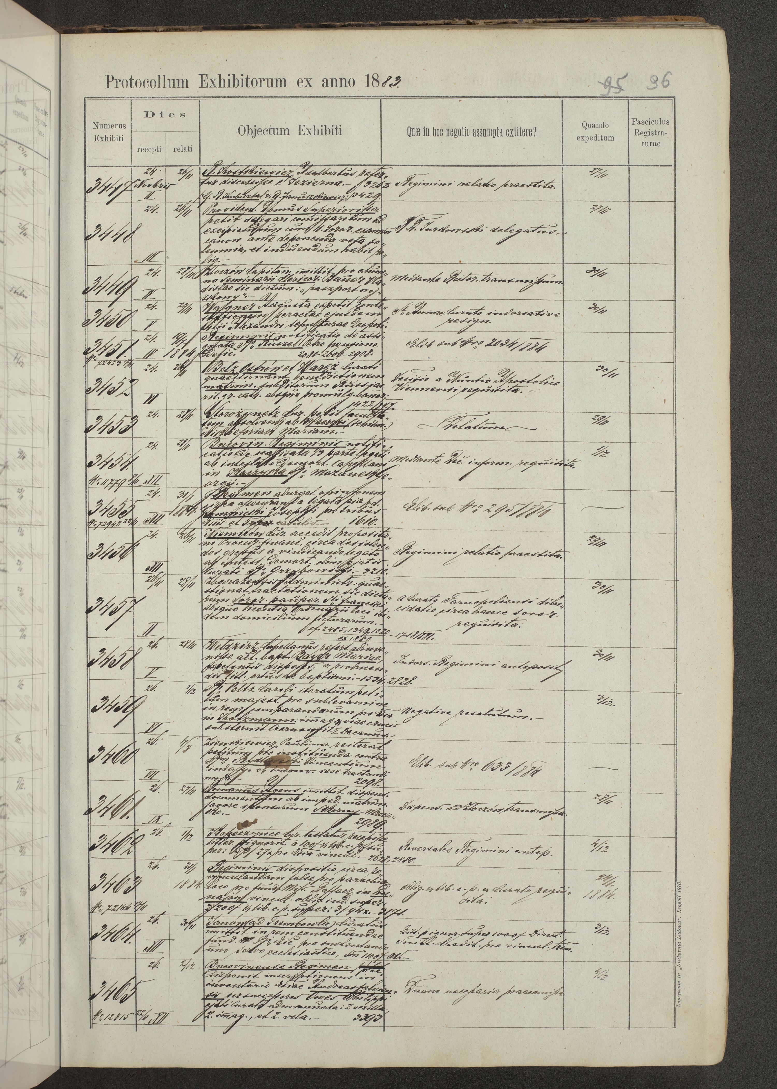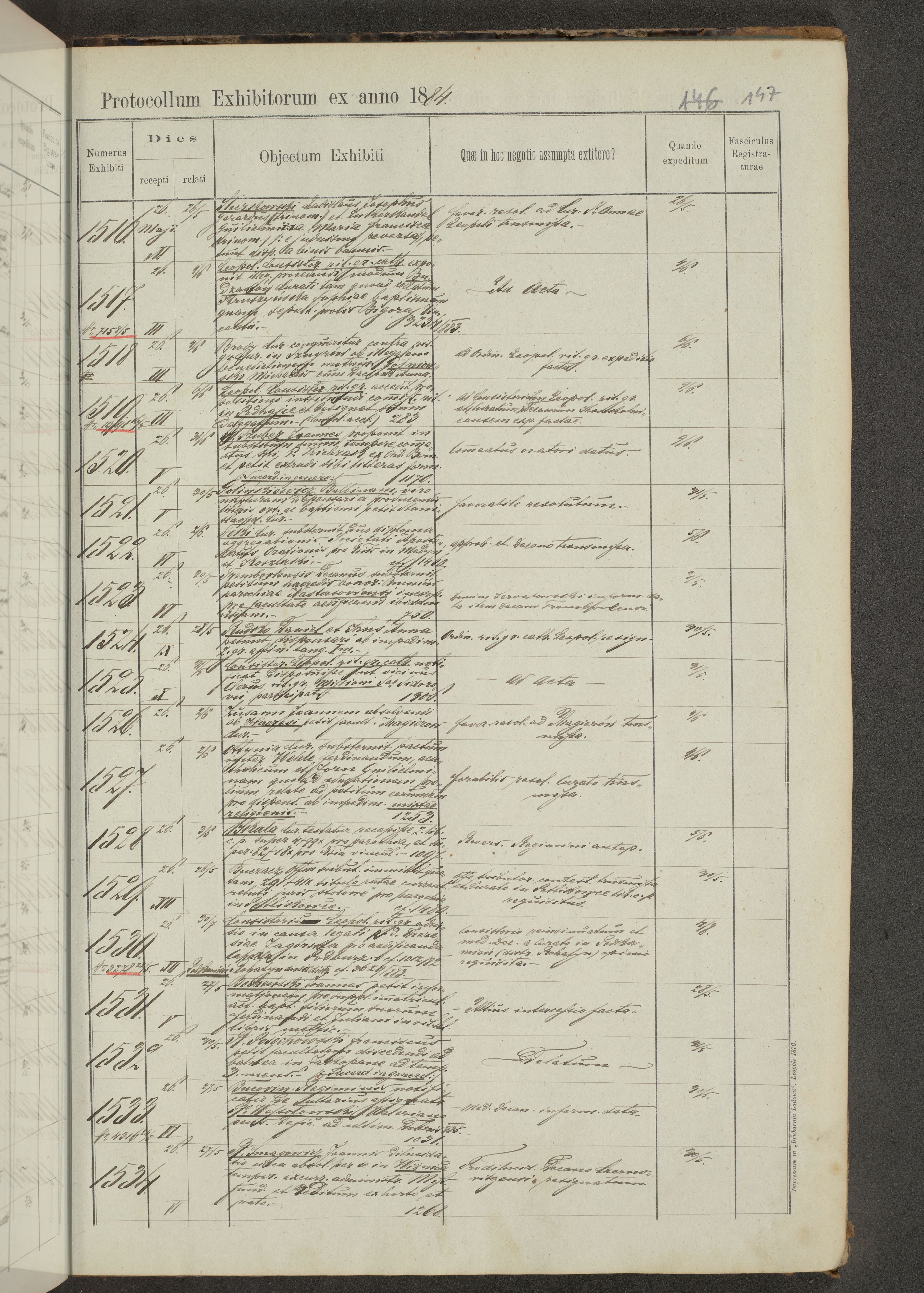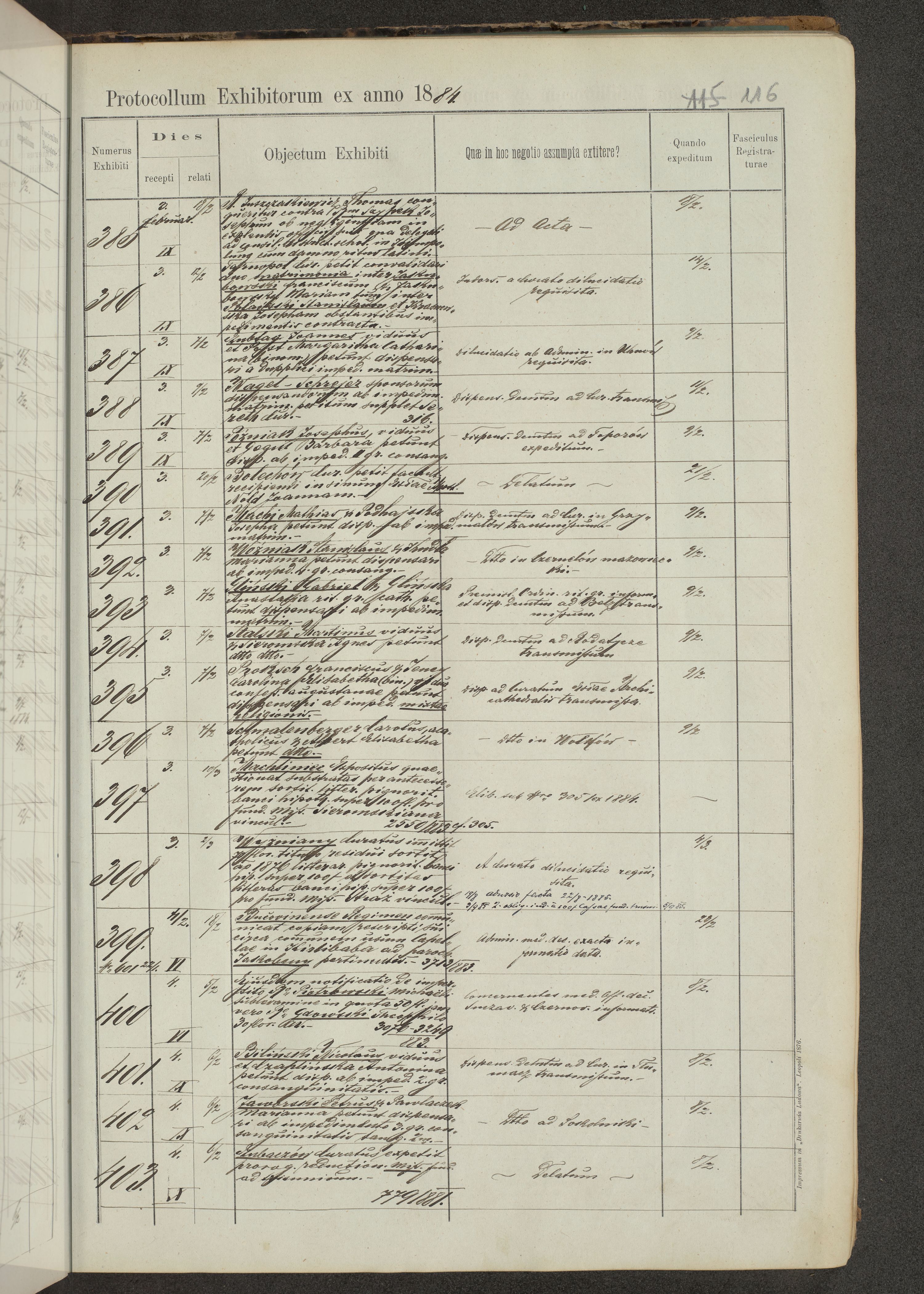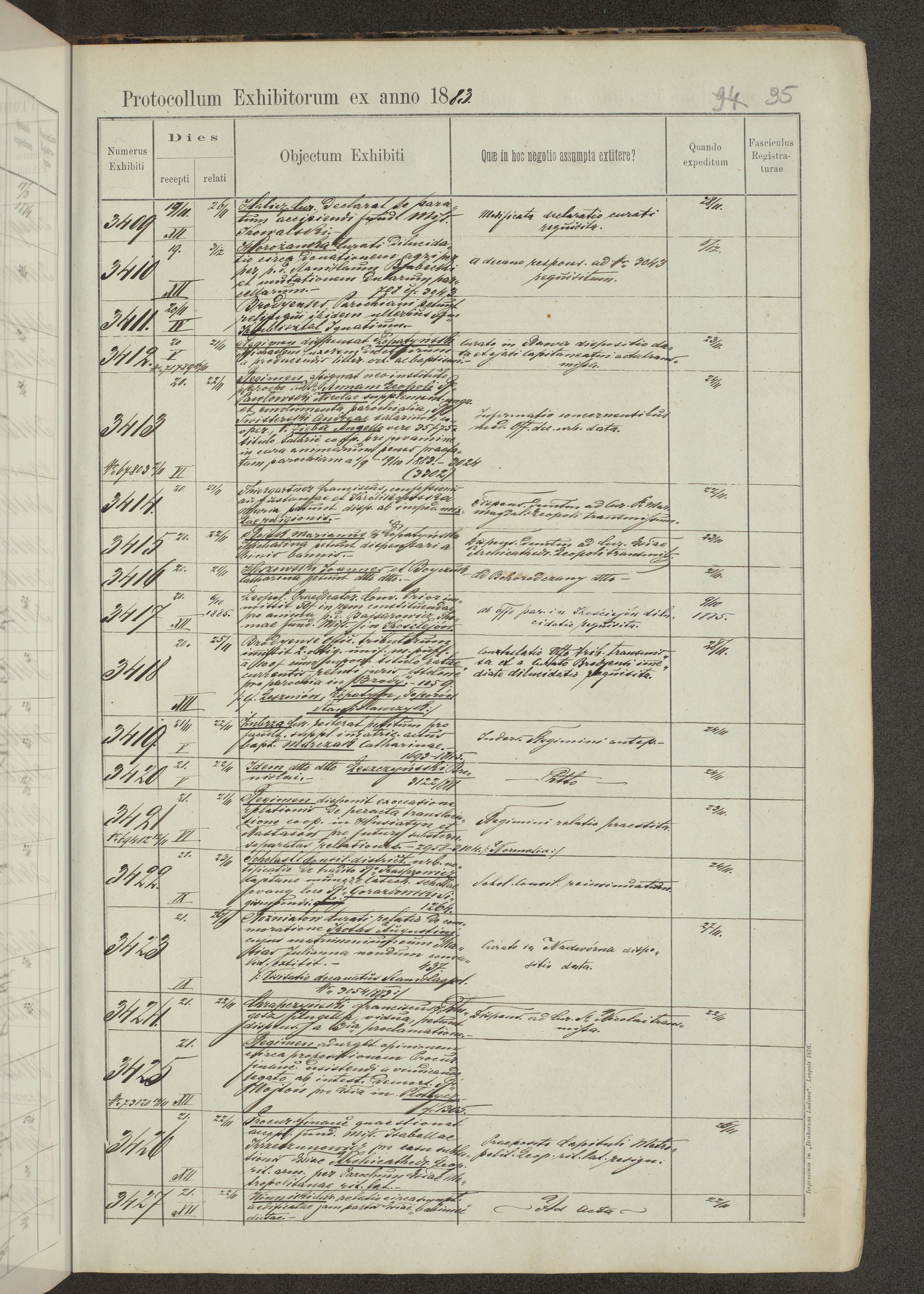 Protocollon exhibitorum in Ecclesiasticis ex anno 1883-1884
