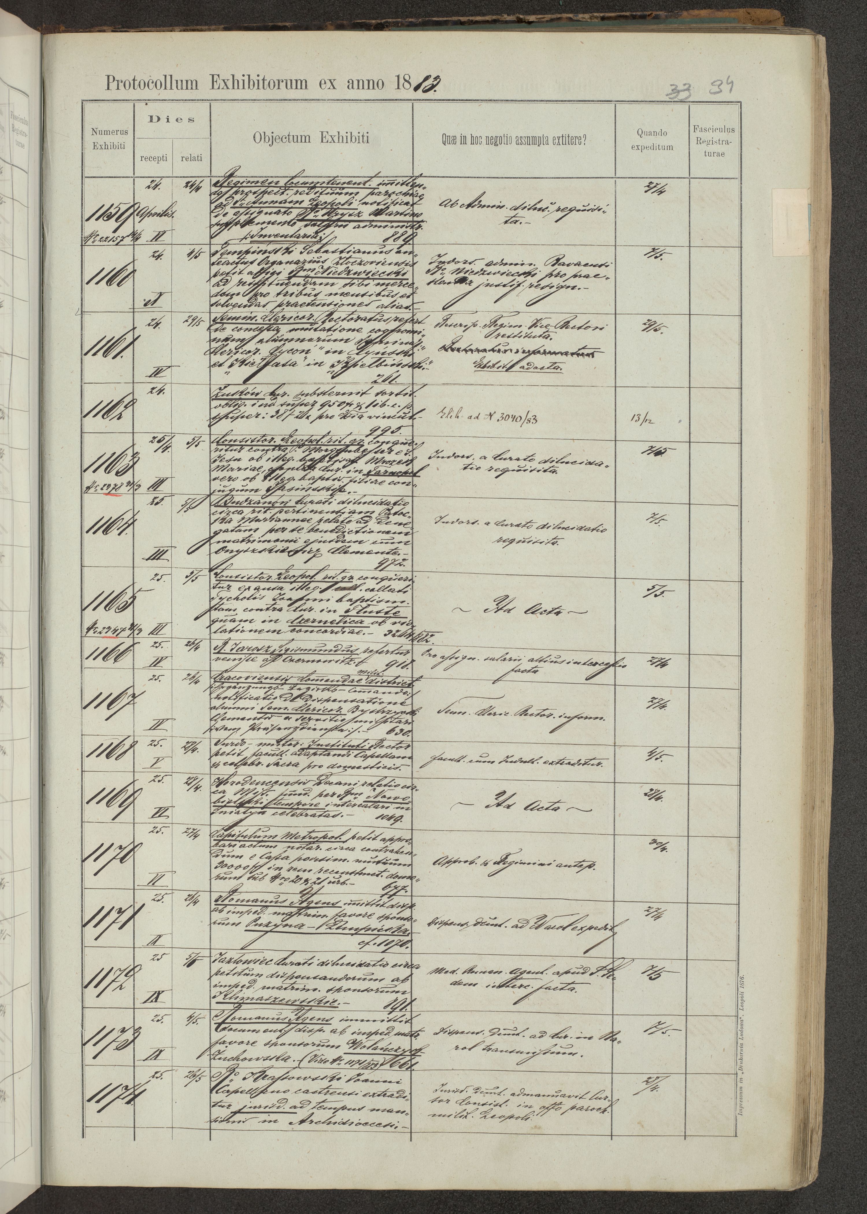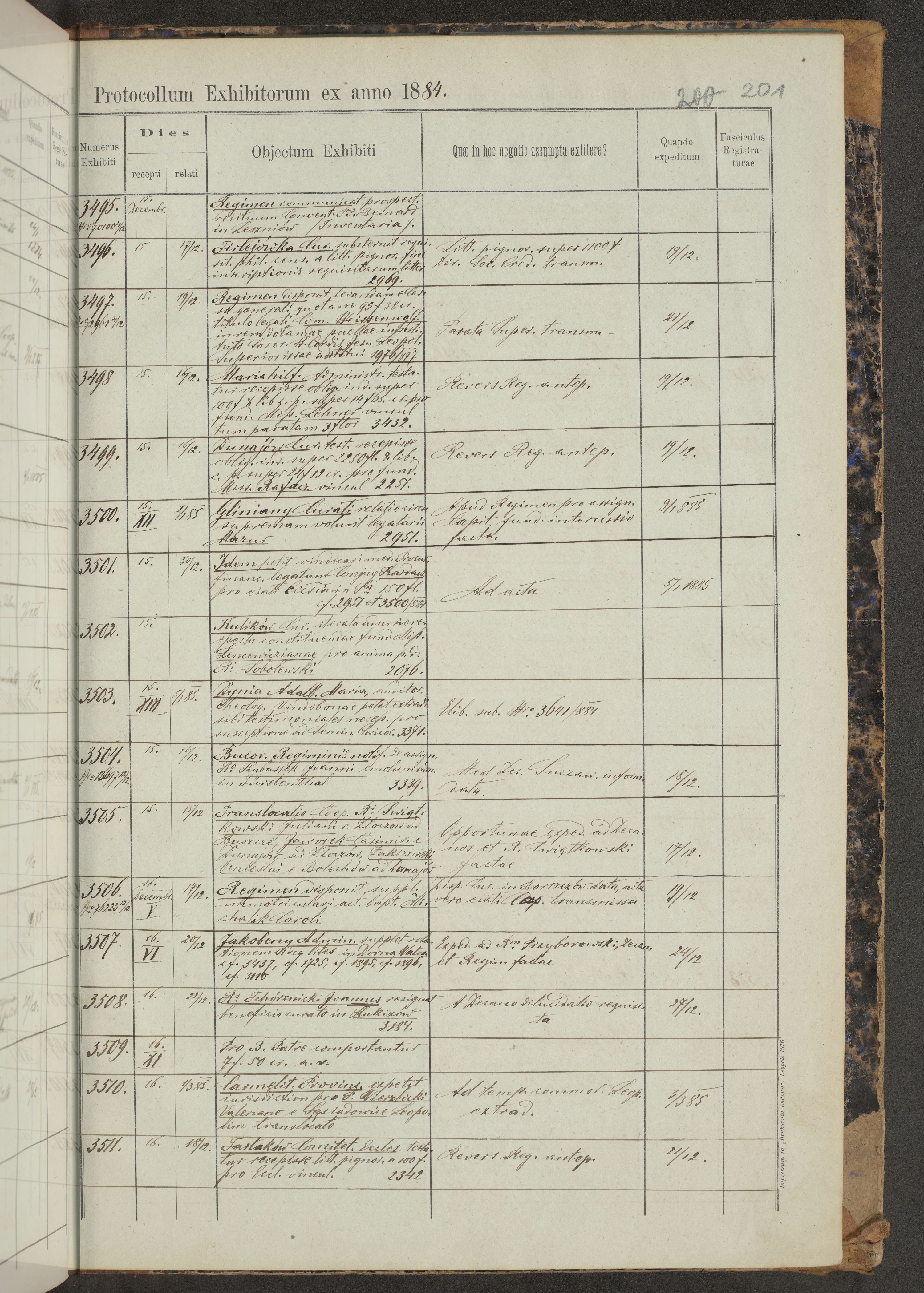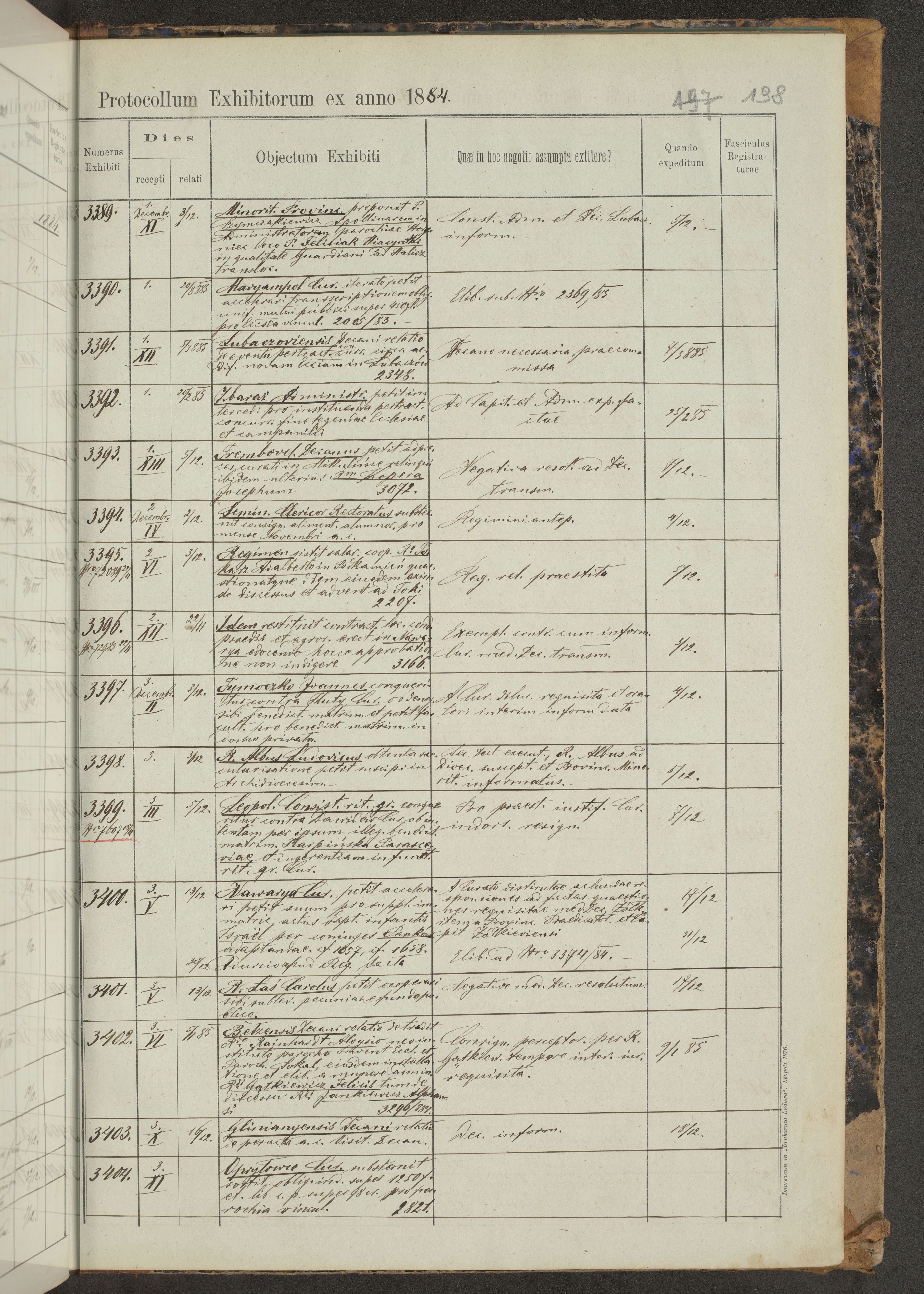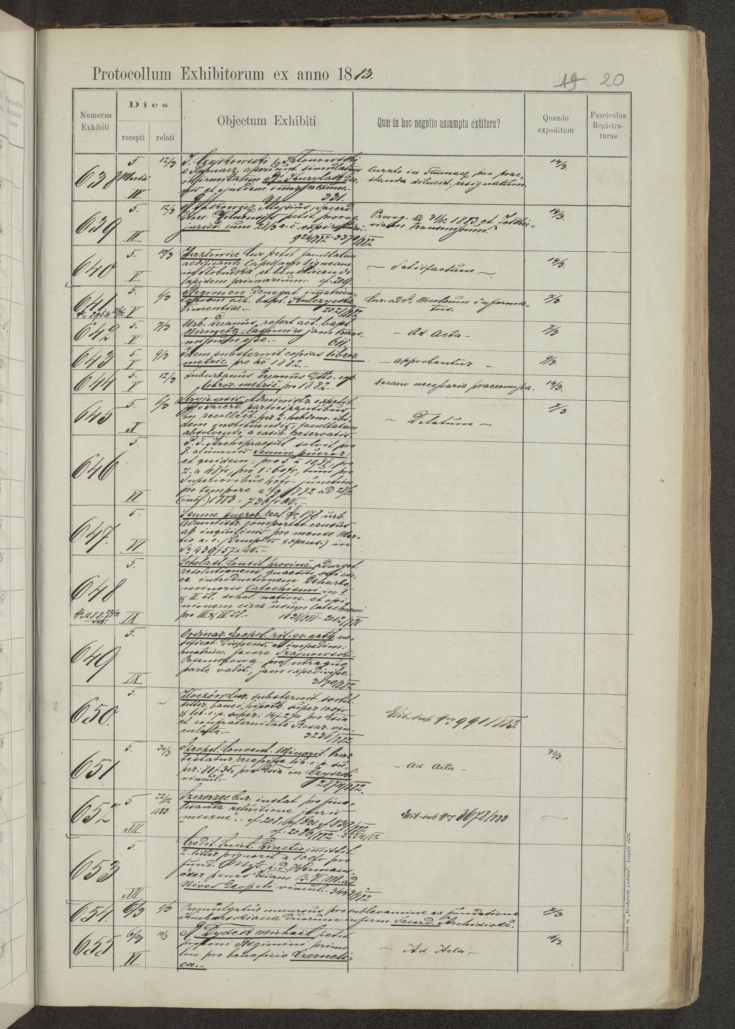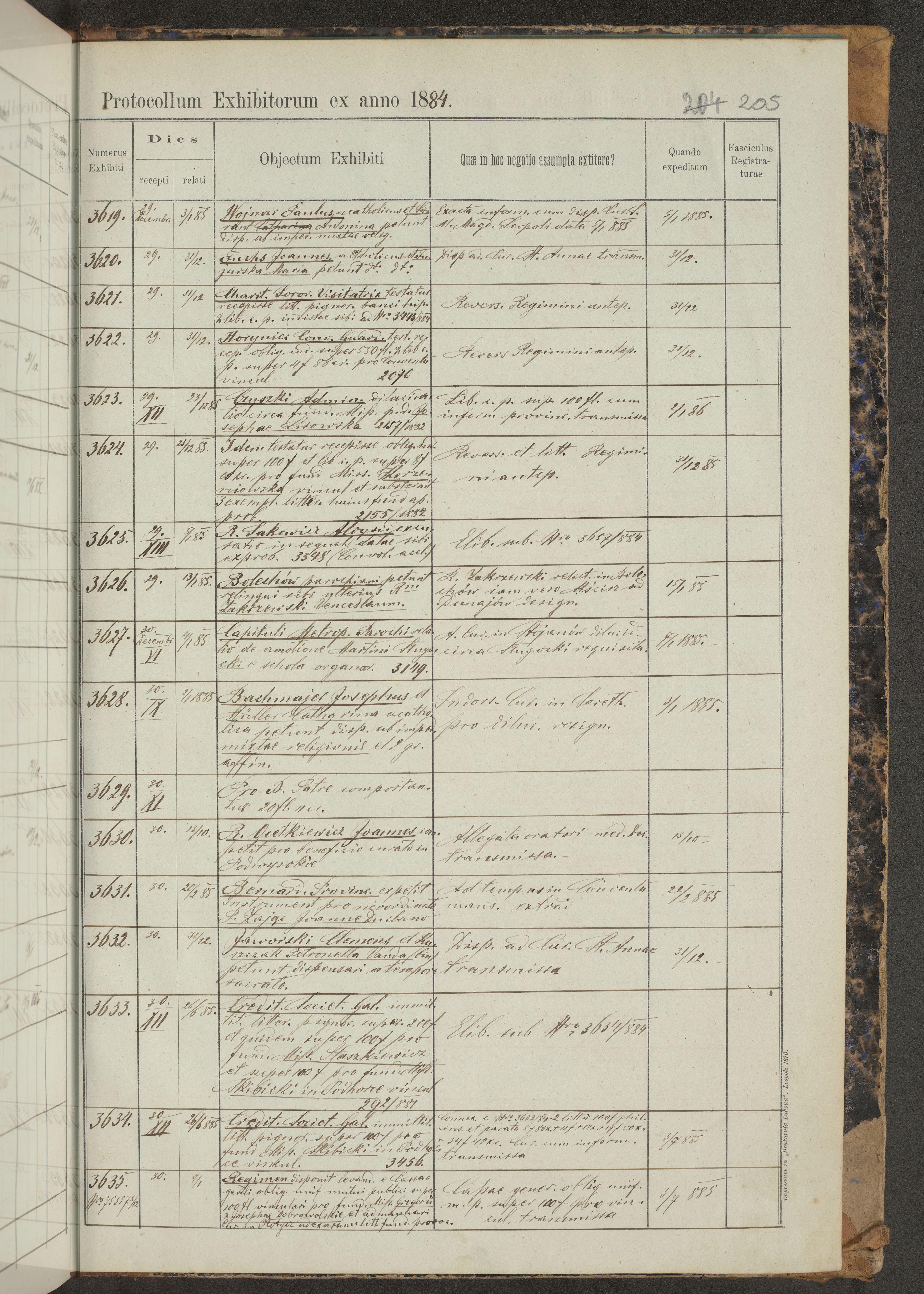Protocollon exhibitorum in Ecclesiasticis ex anno 1883-1884