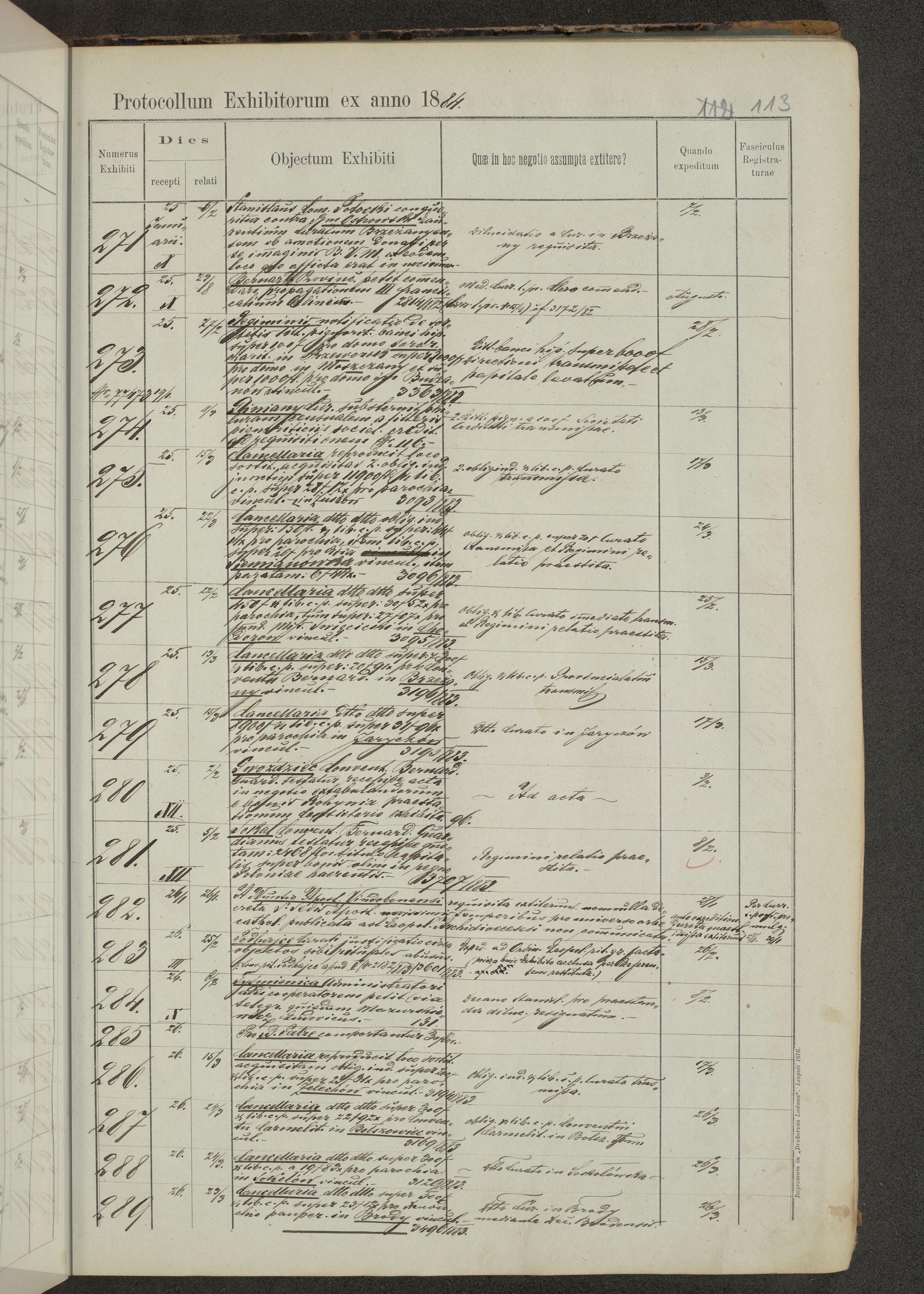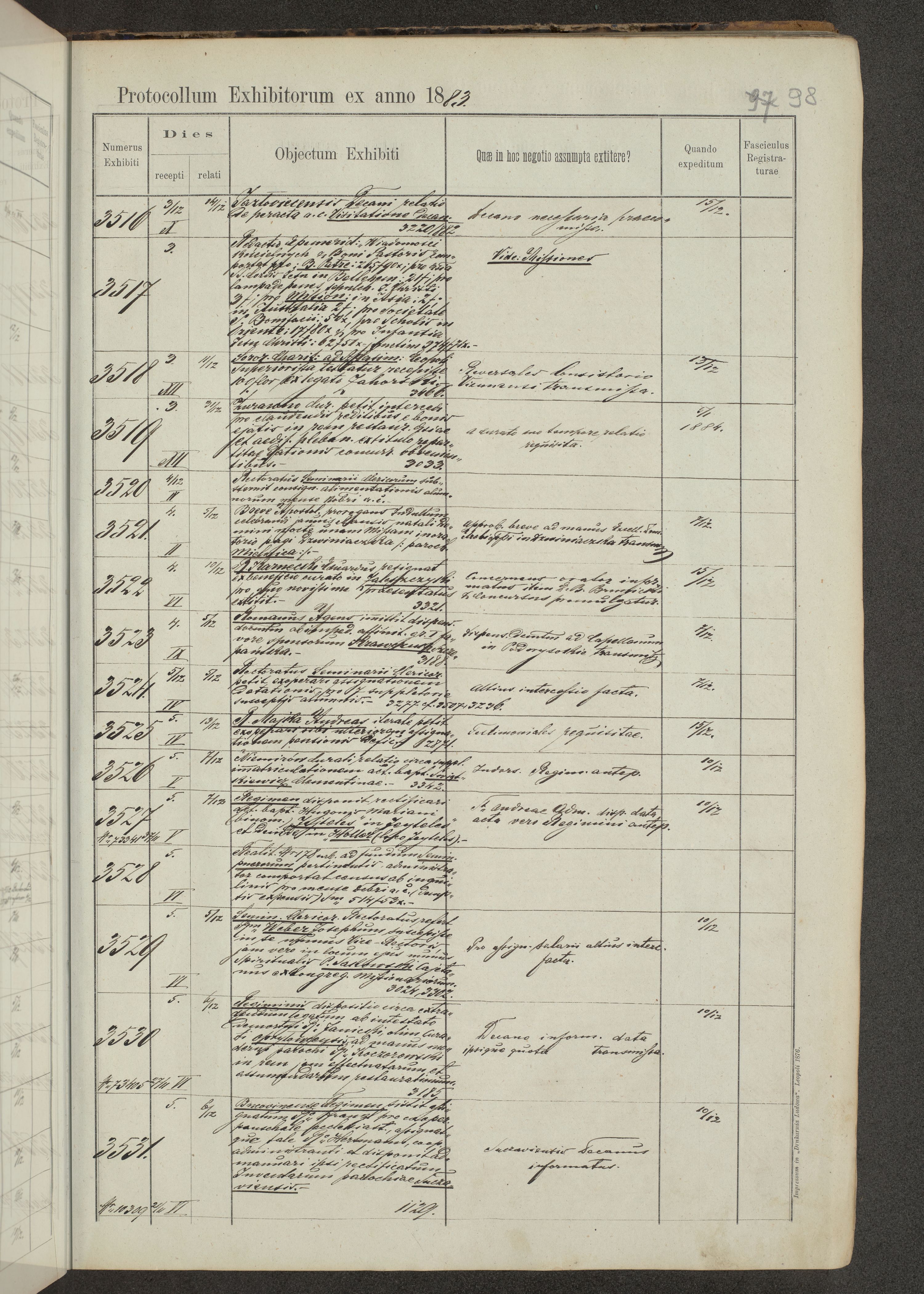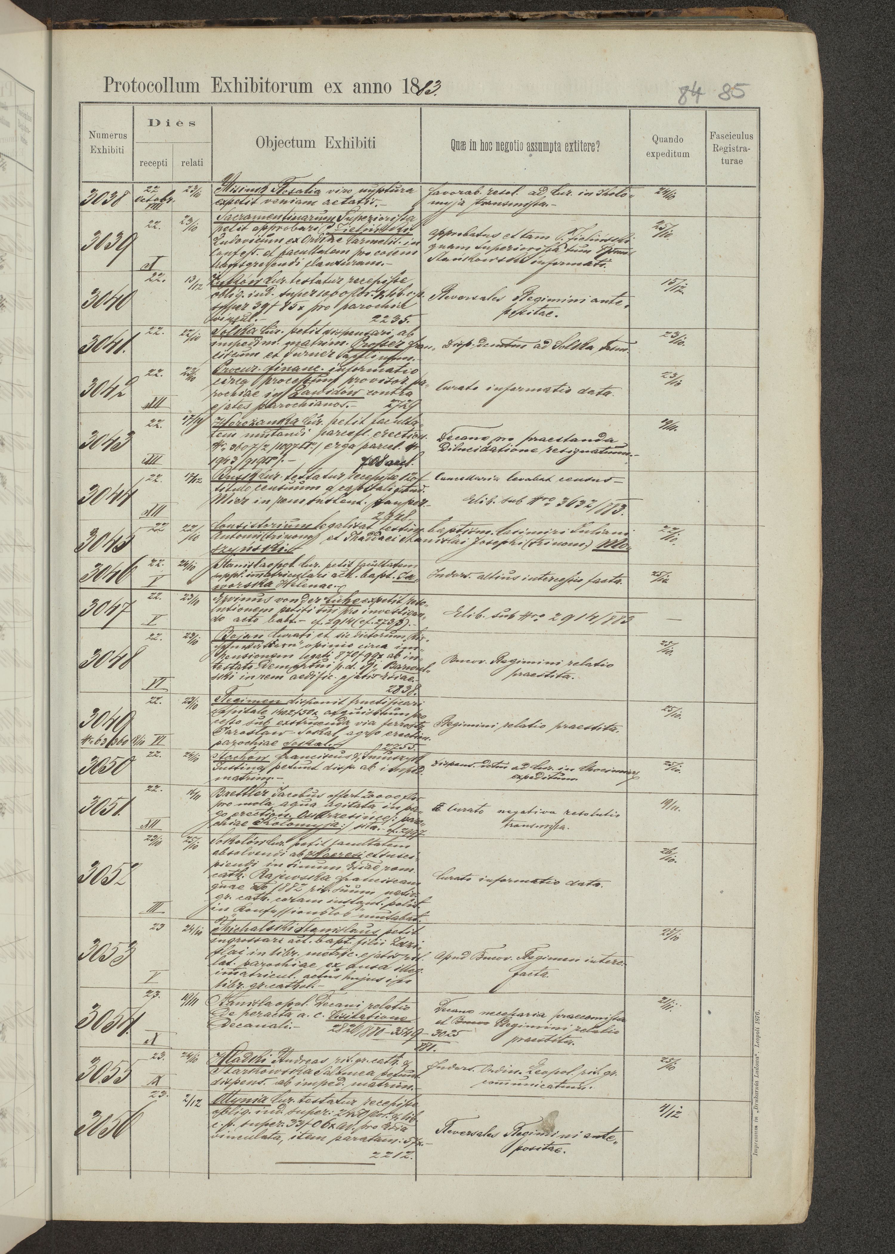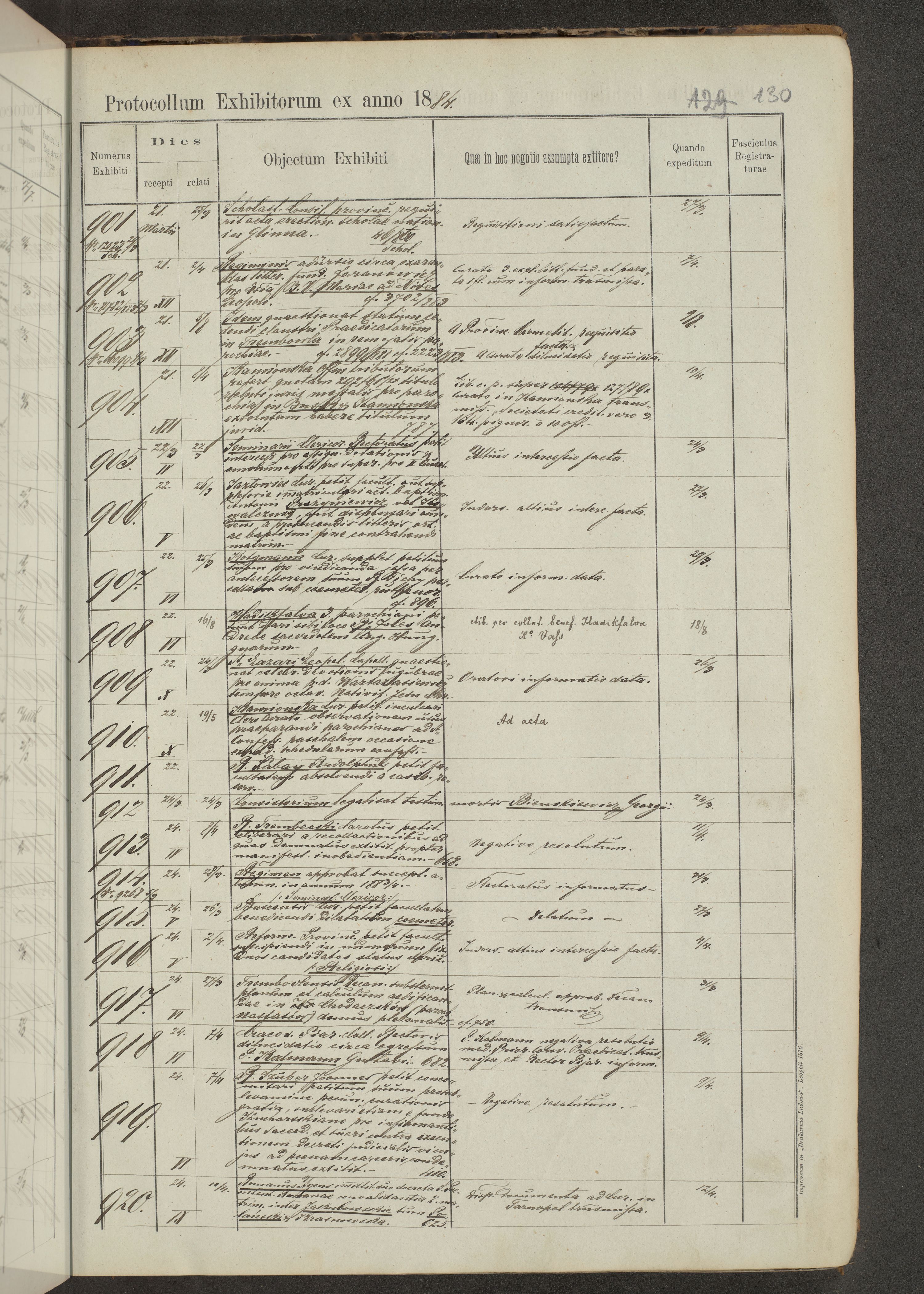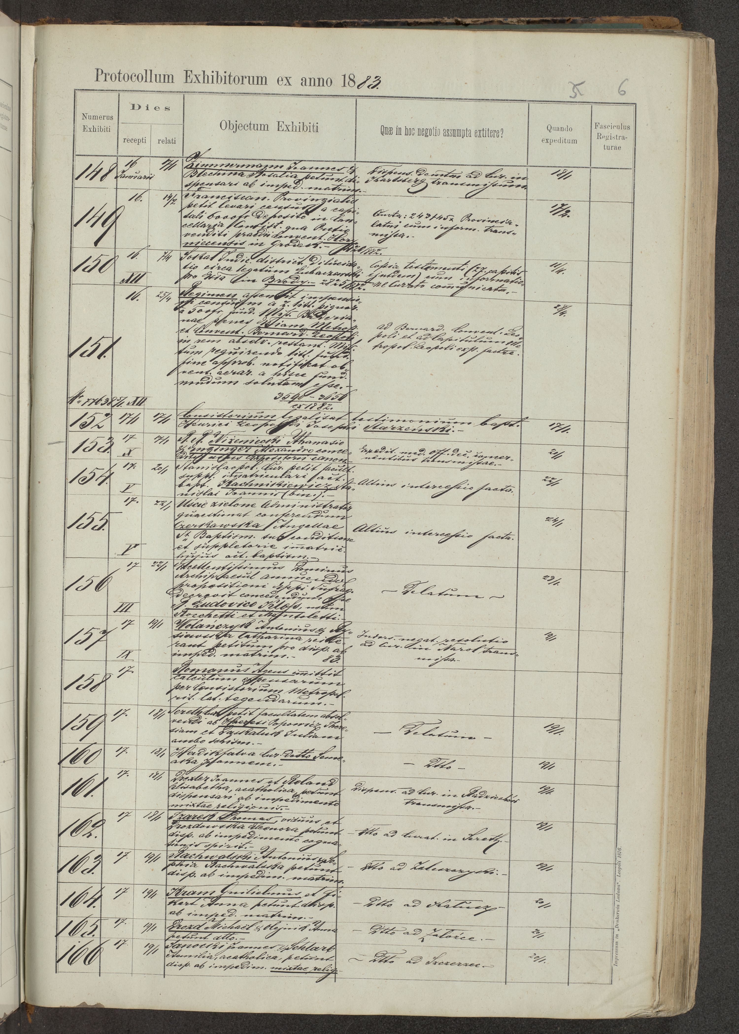 Protocollon exhibitorum in Ecclesiasticis ex anno 1883-1884