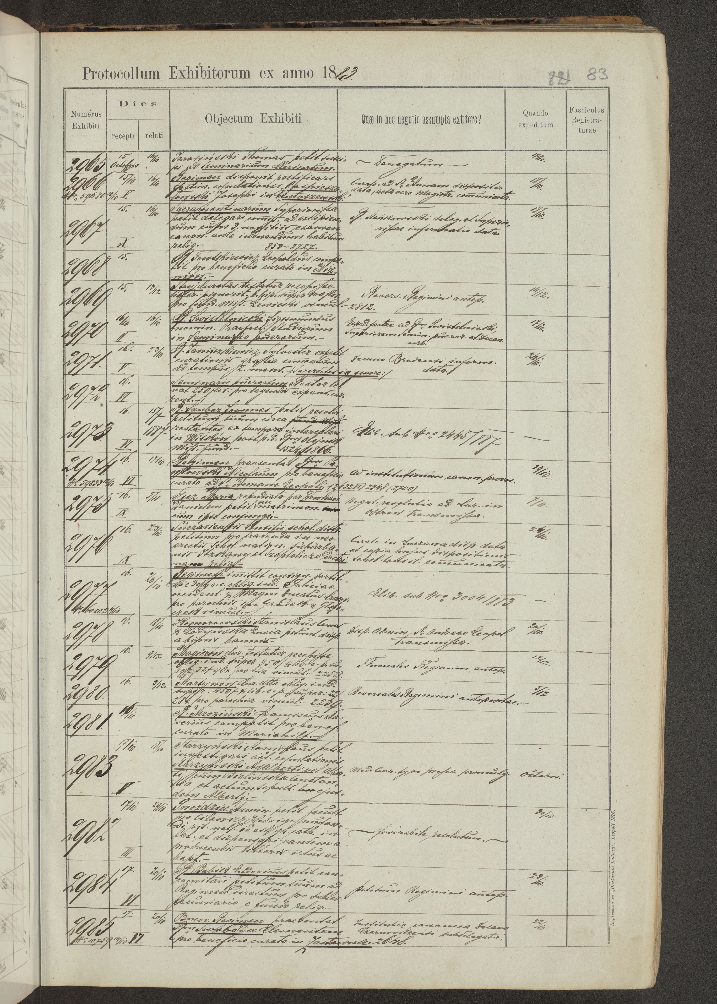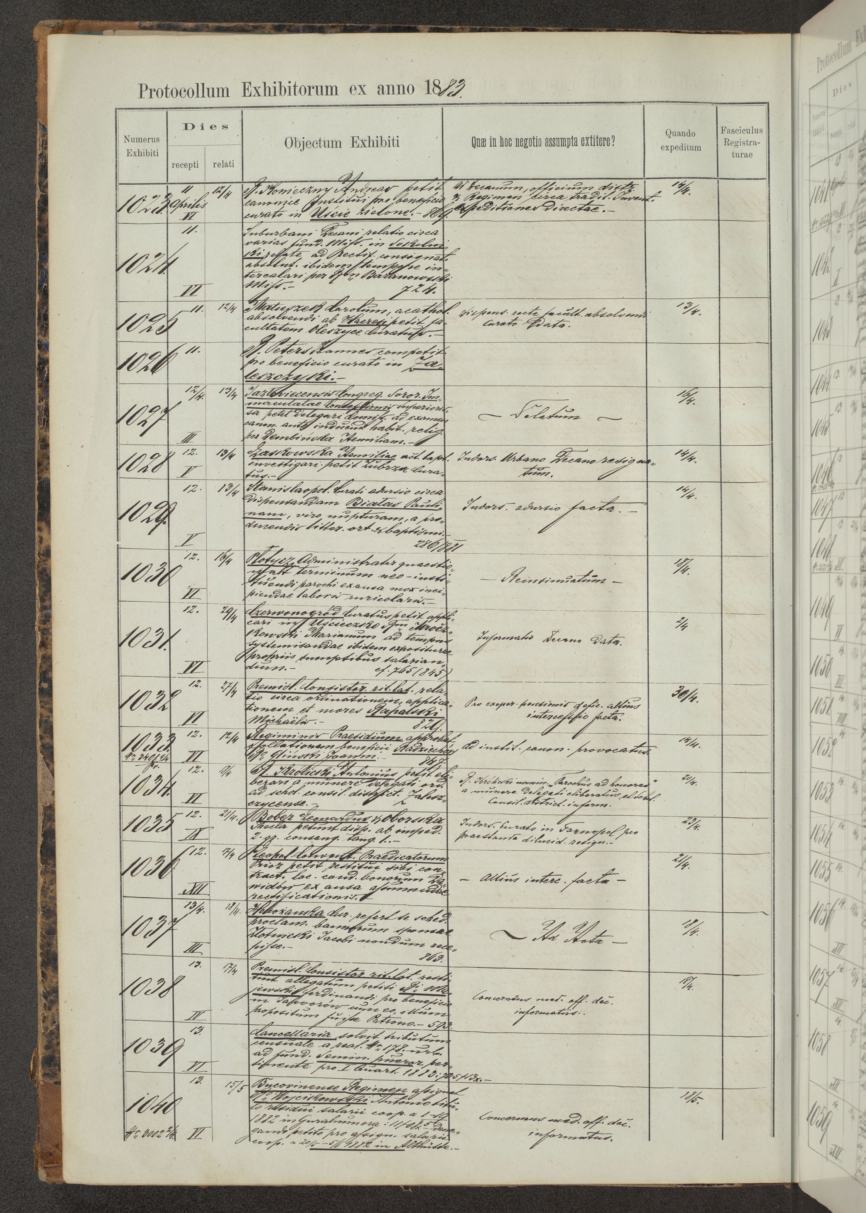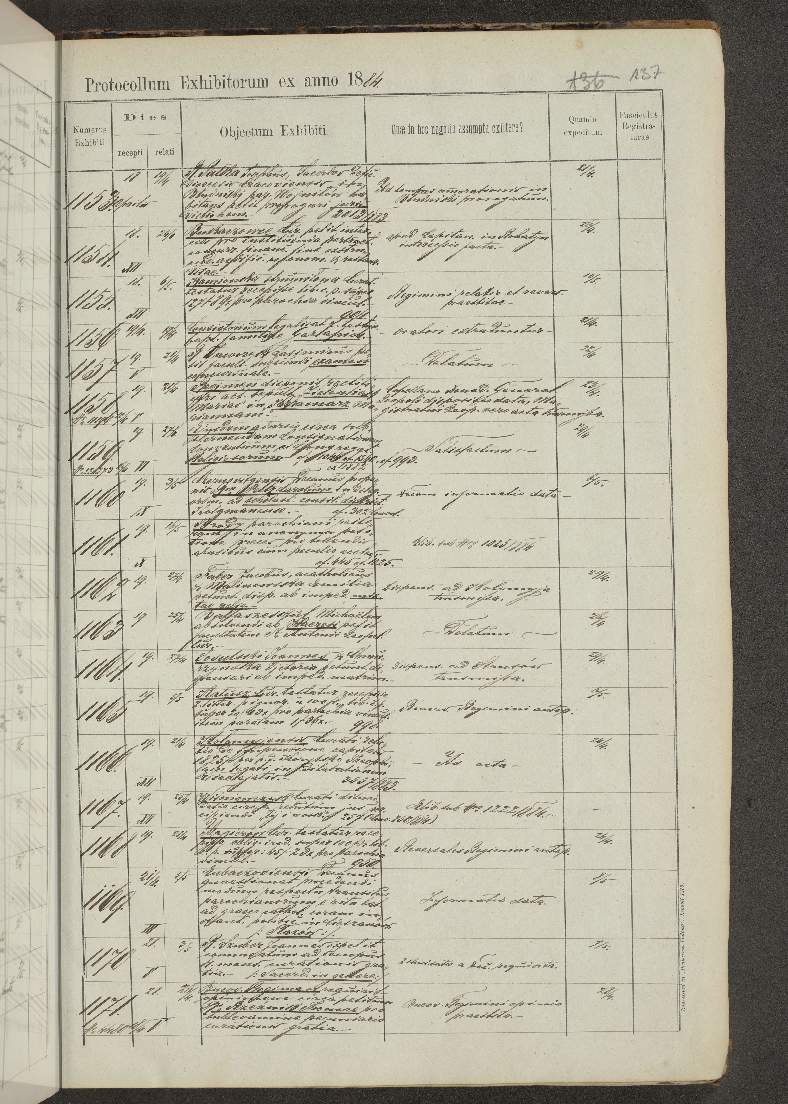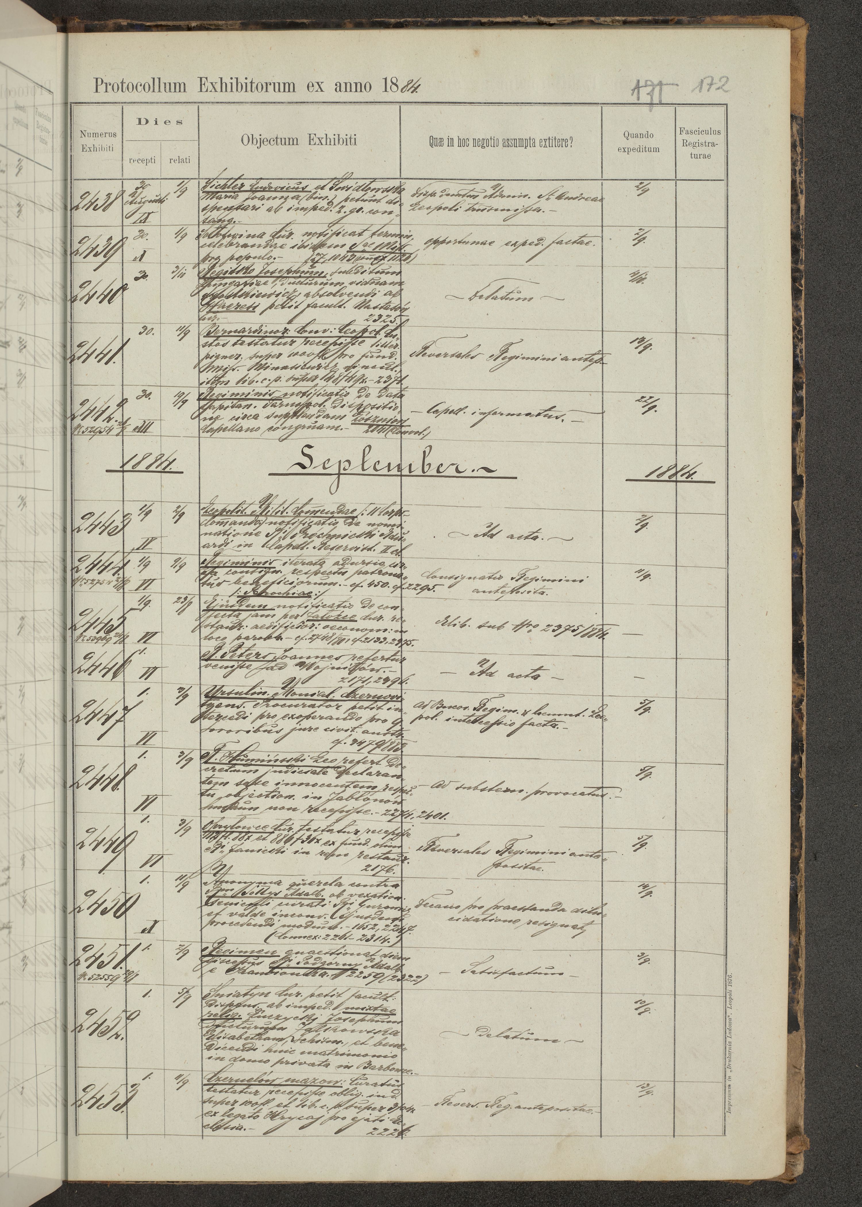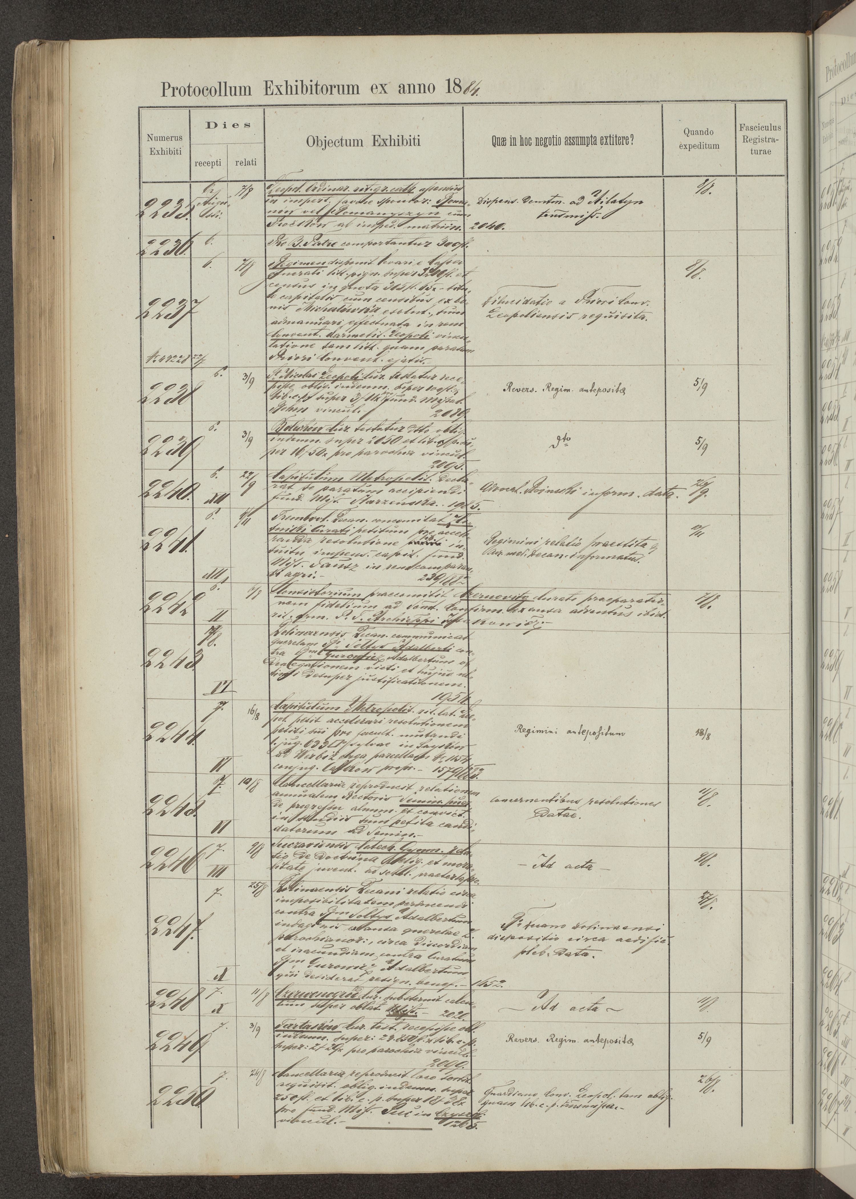 Protocollon exhibitorum in Ecclesiasticis ex anno 1883-1884