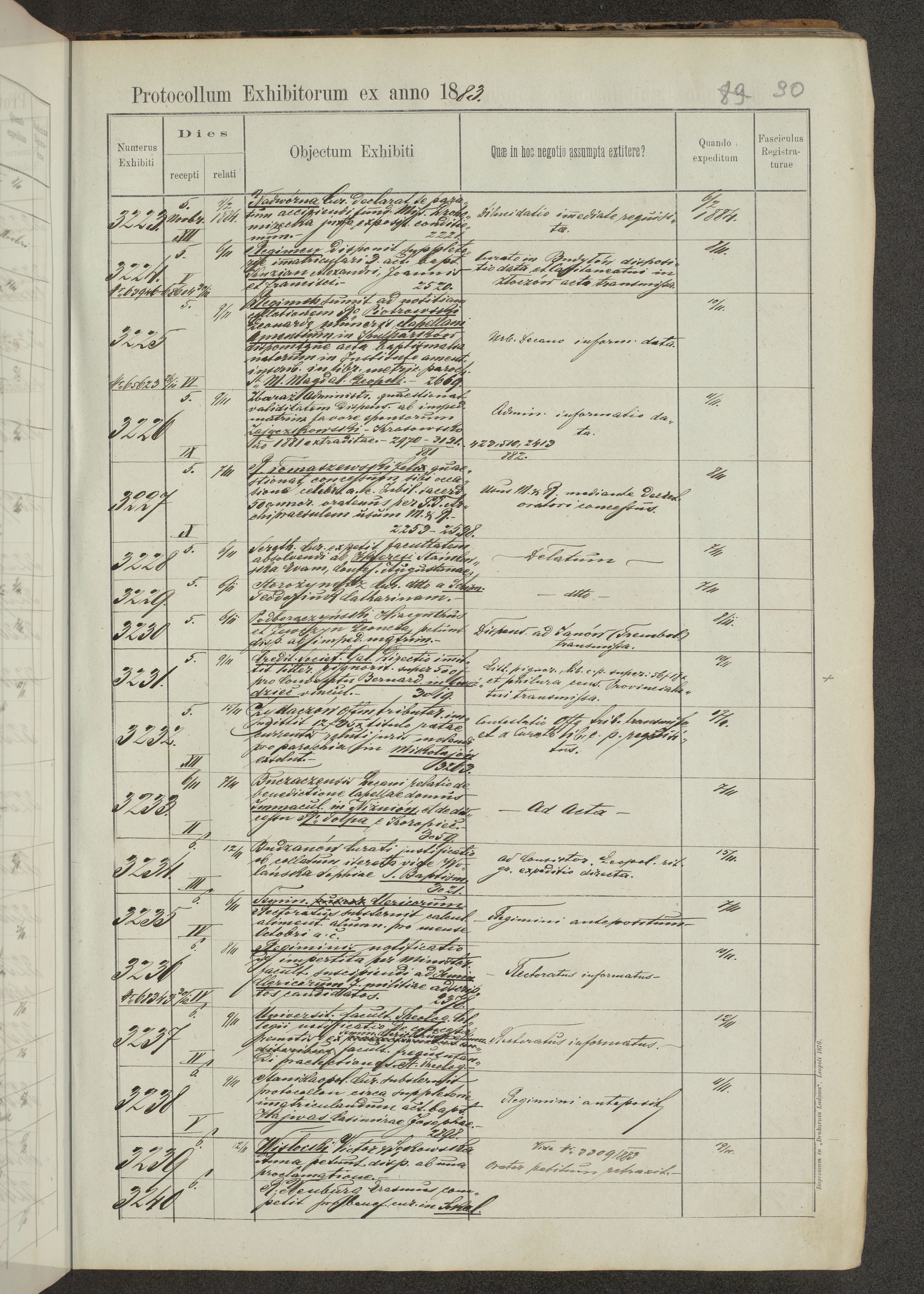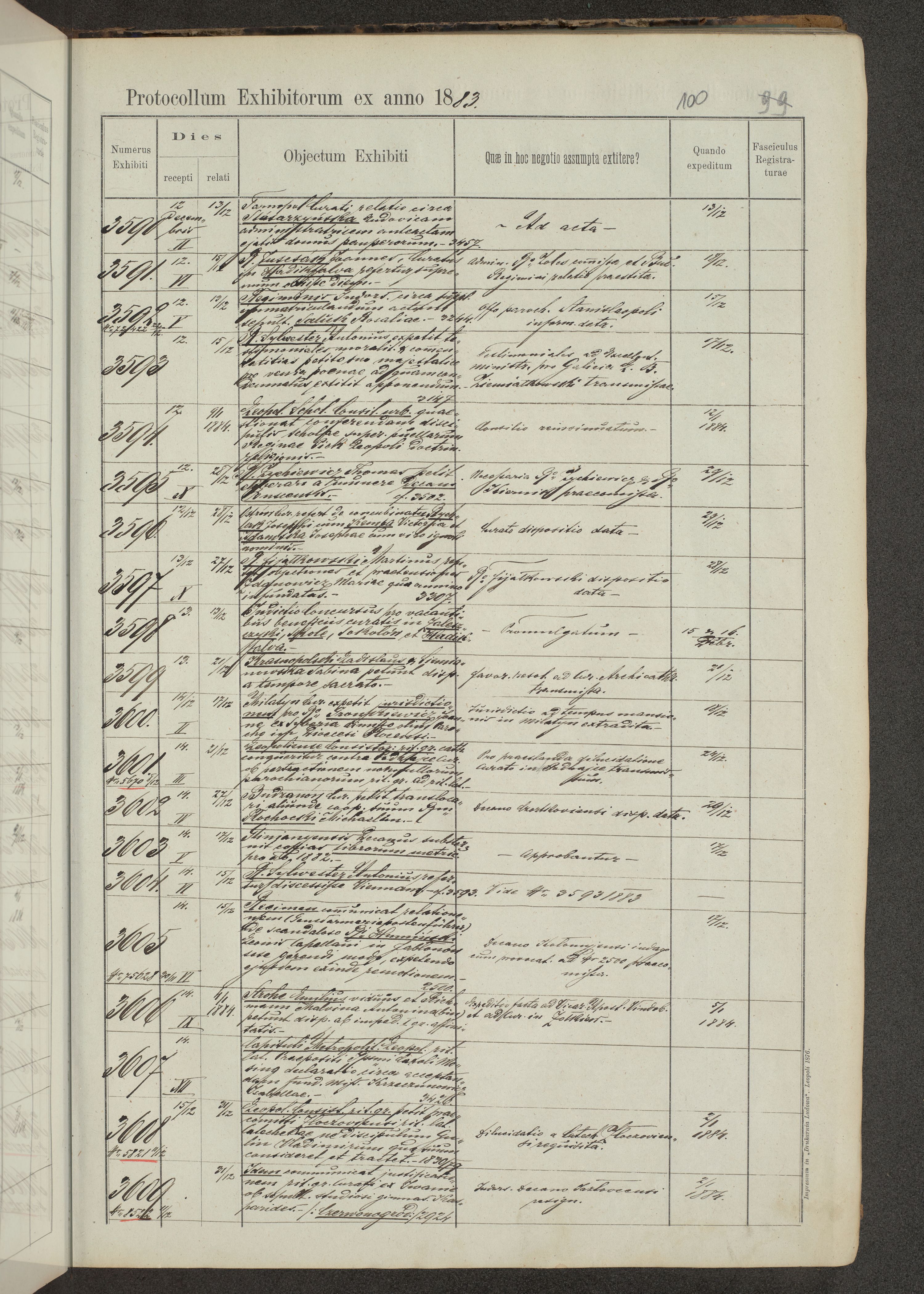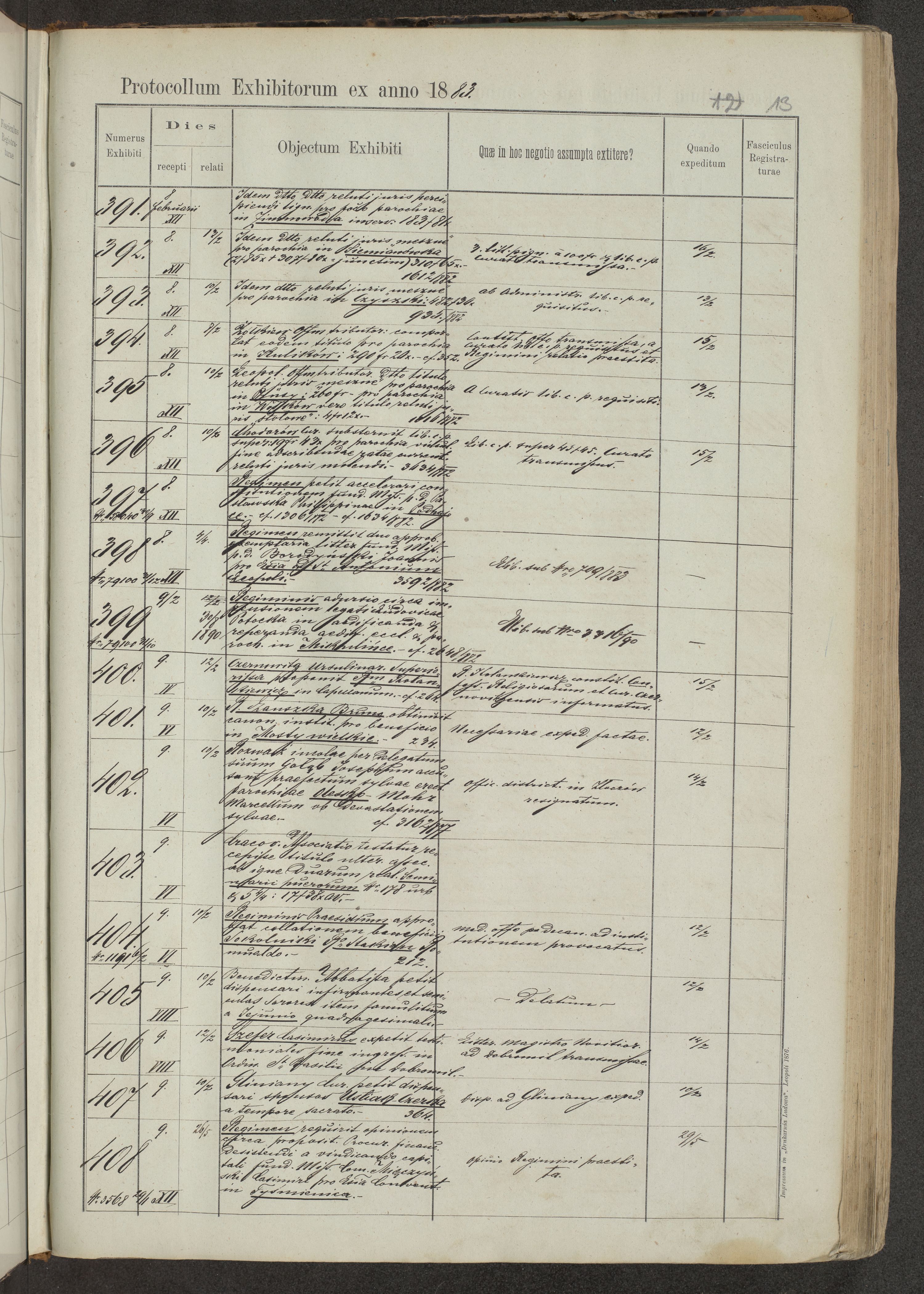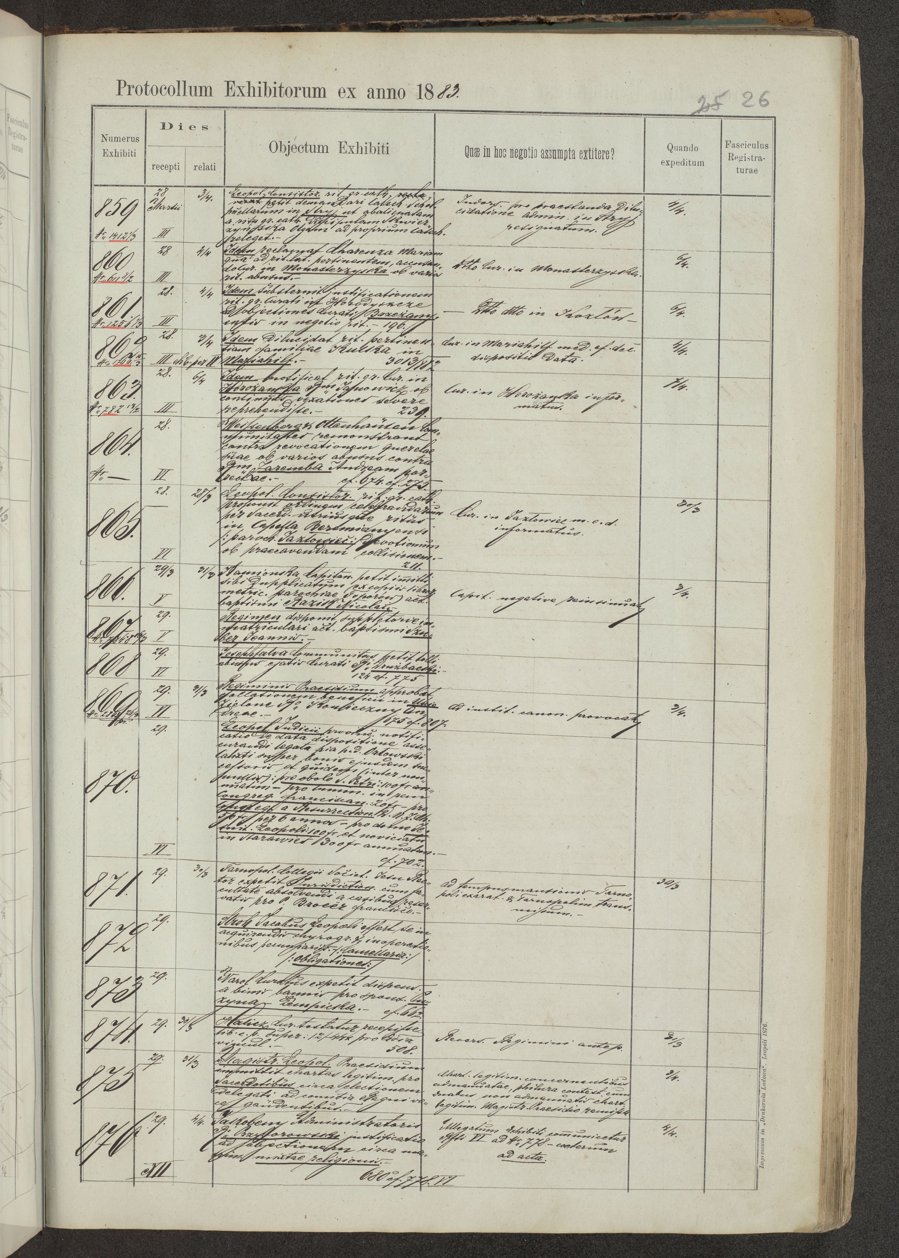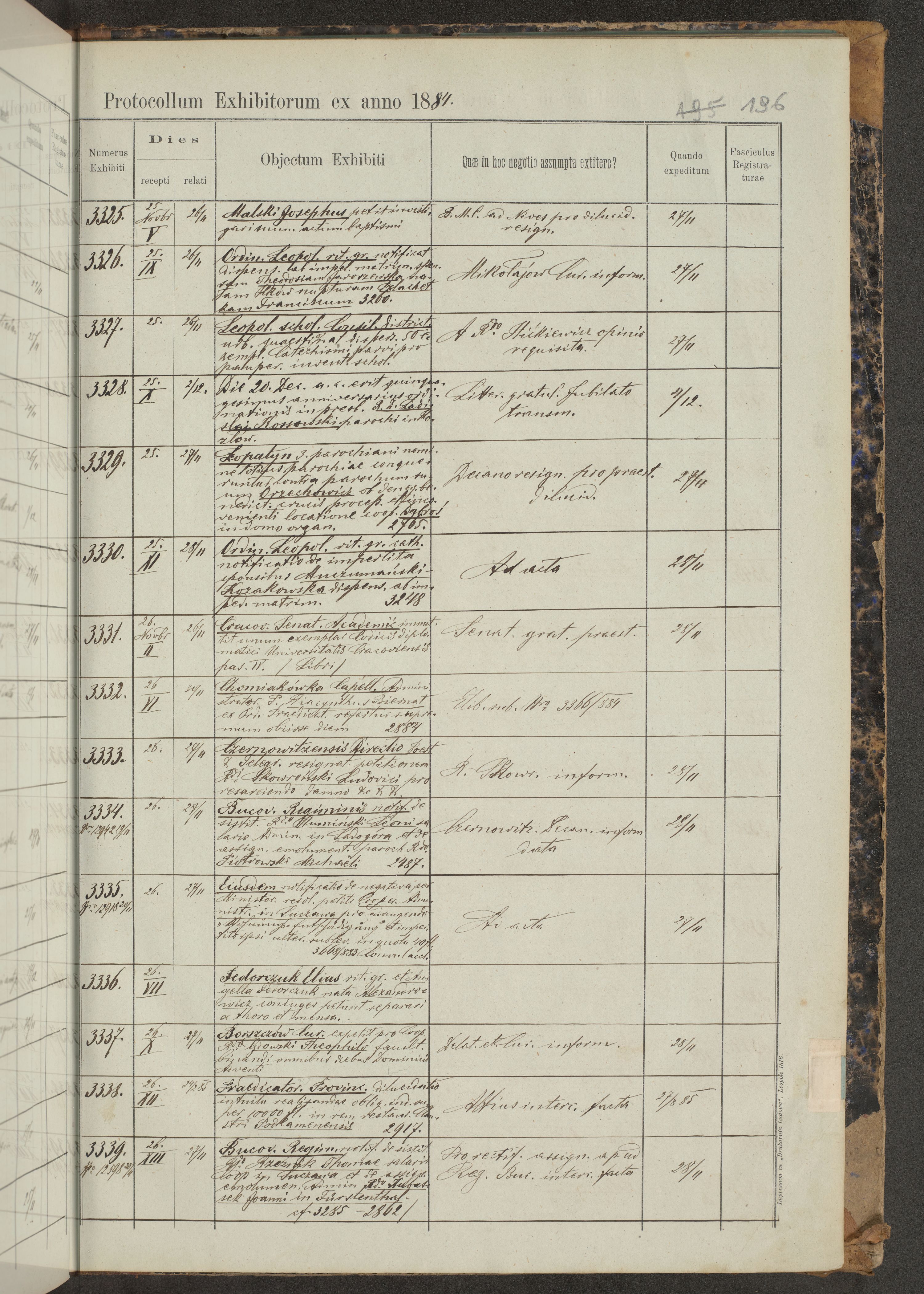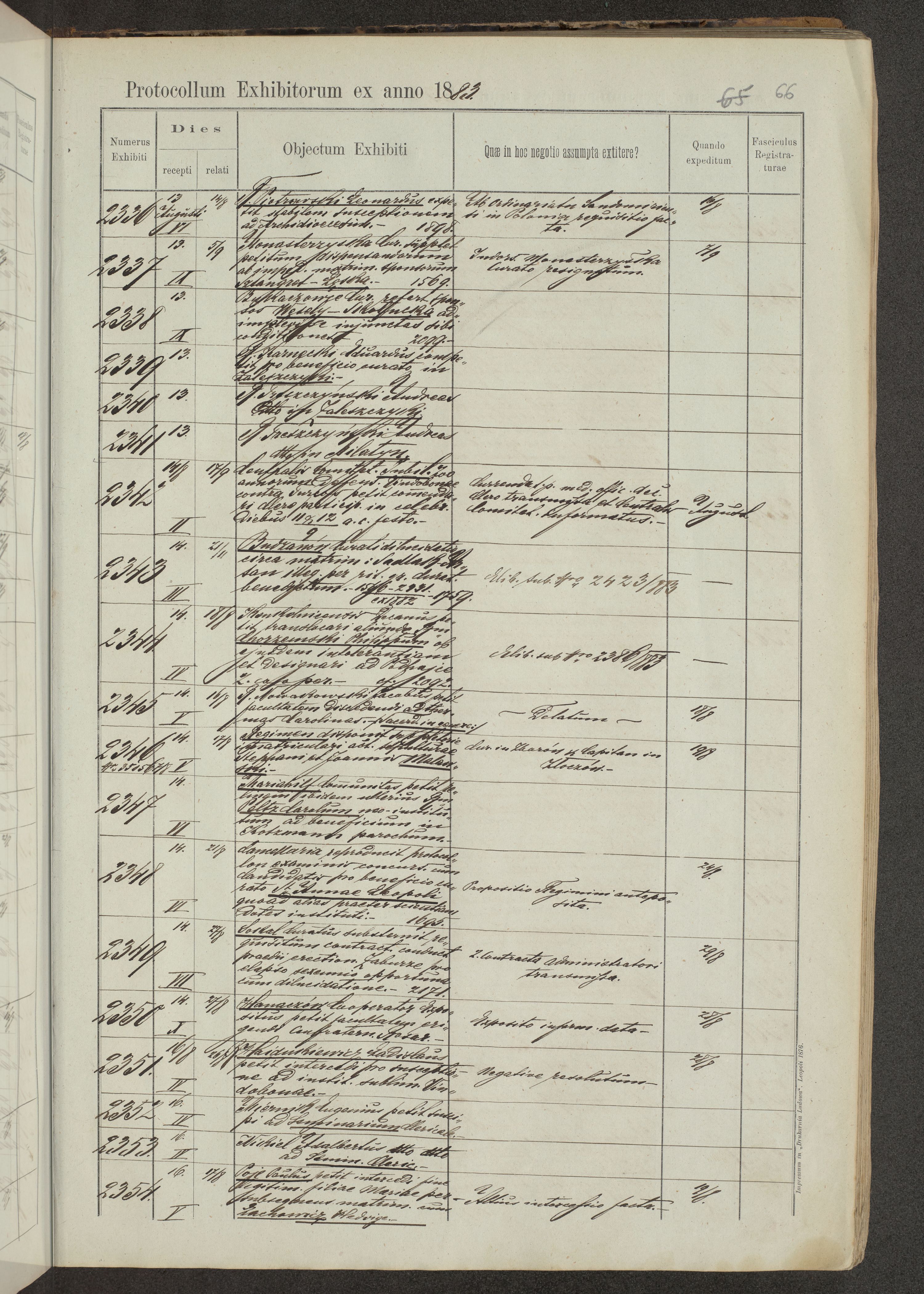 Protocollon exhibitorum in Ecclesiasticis ex anno 1883-1884