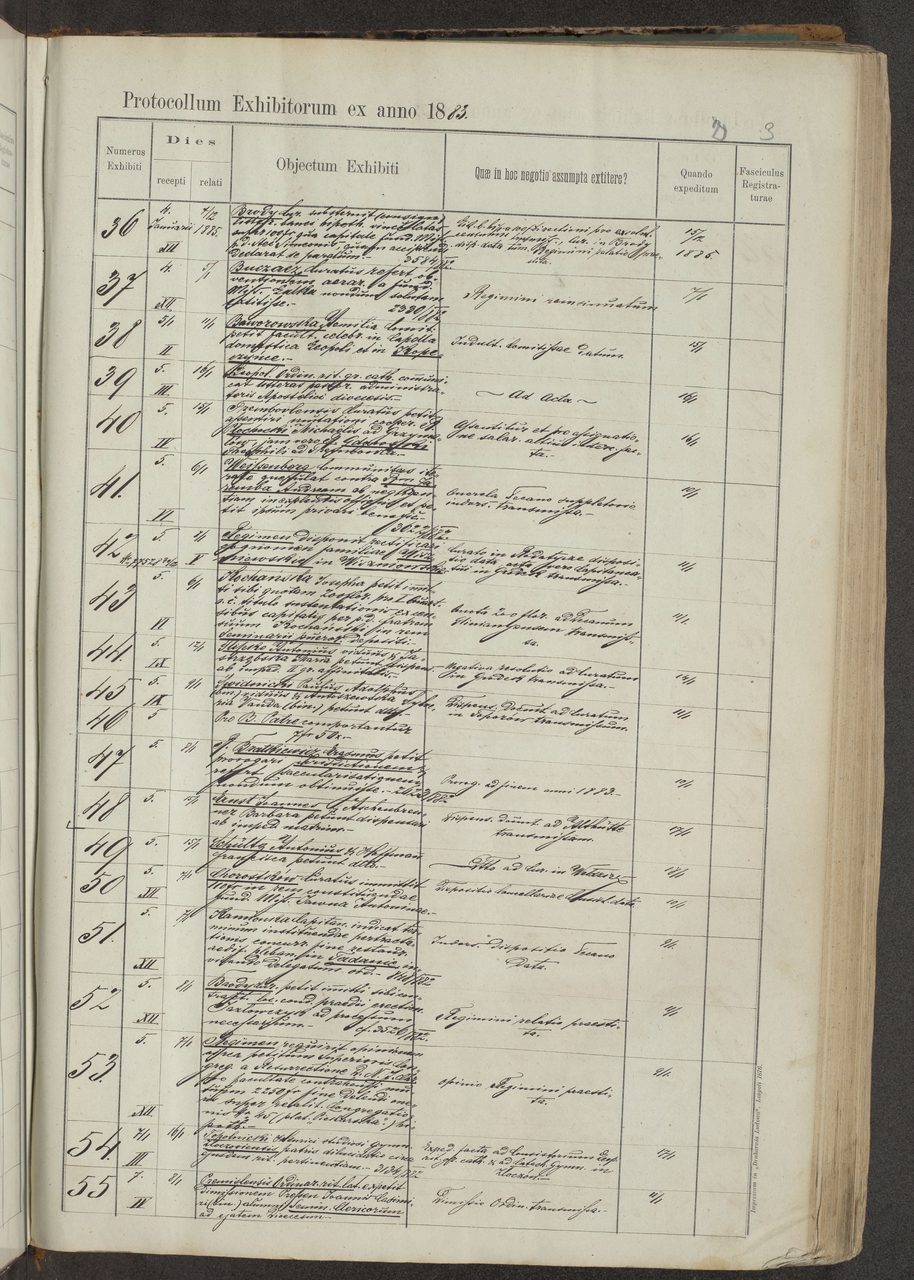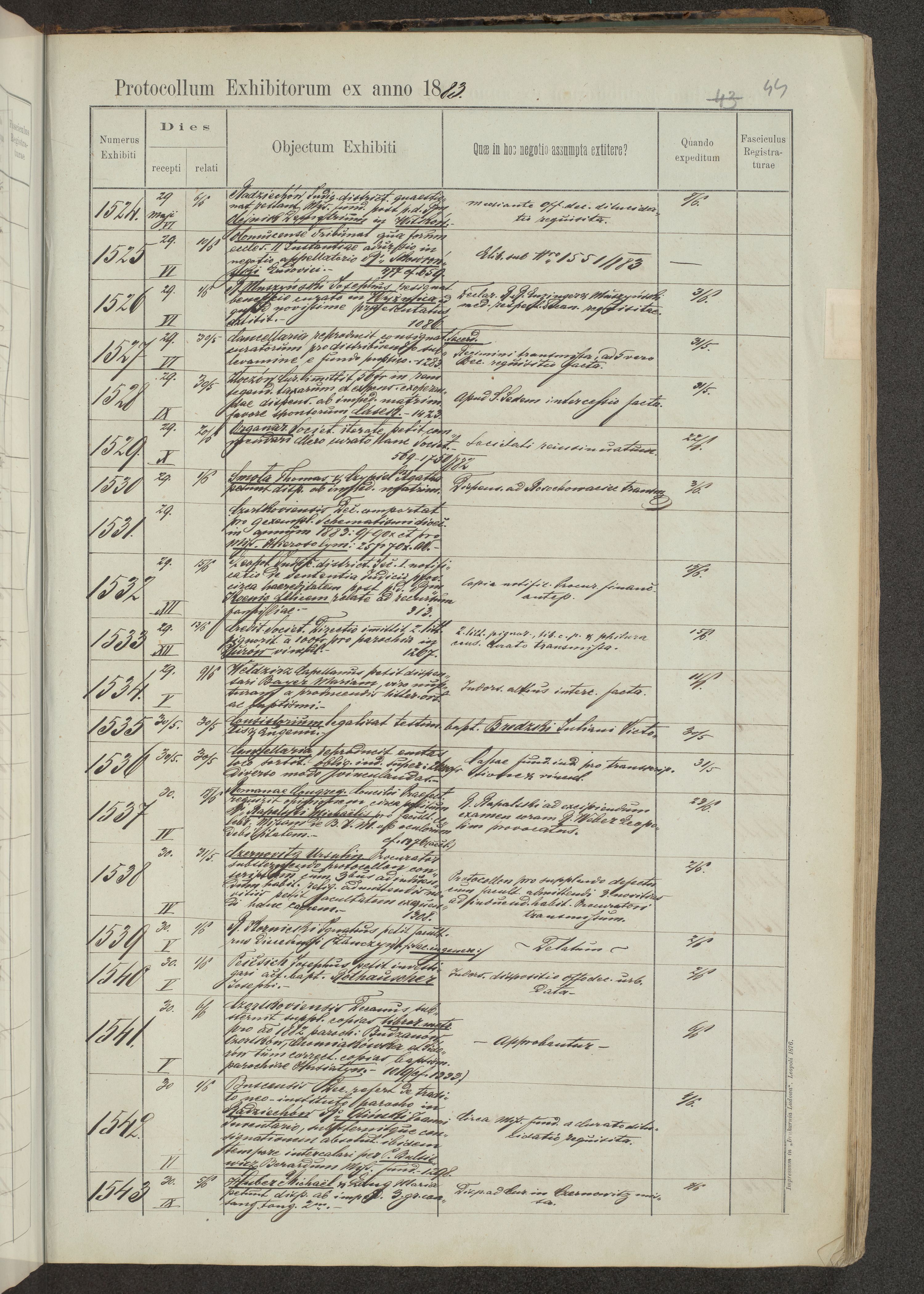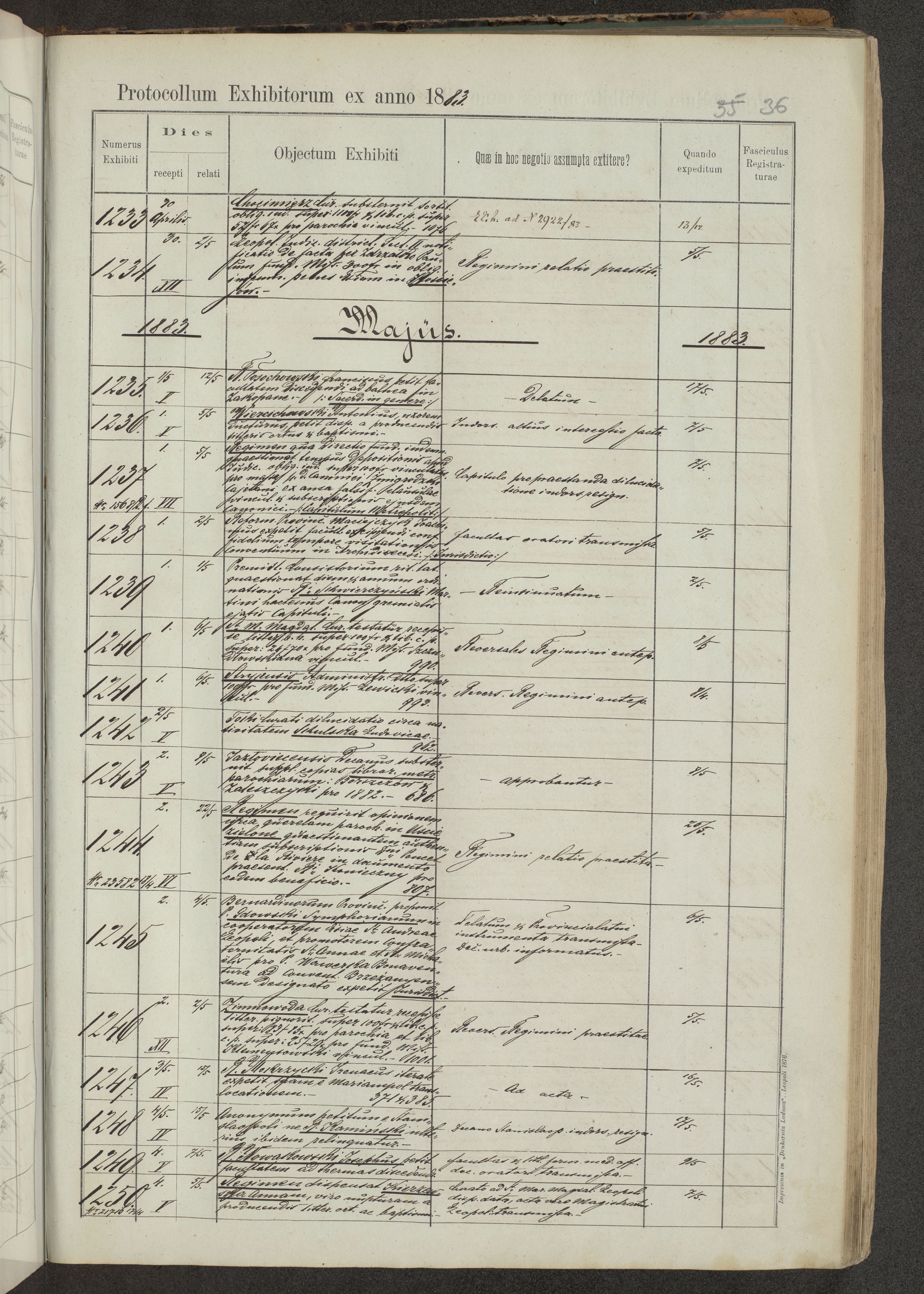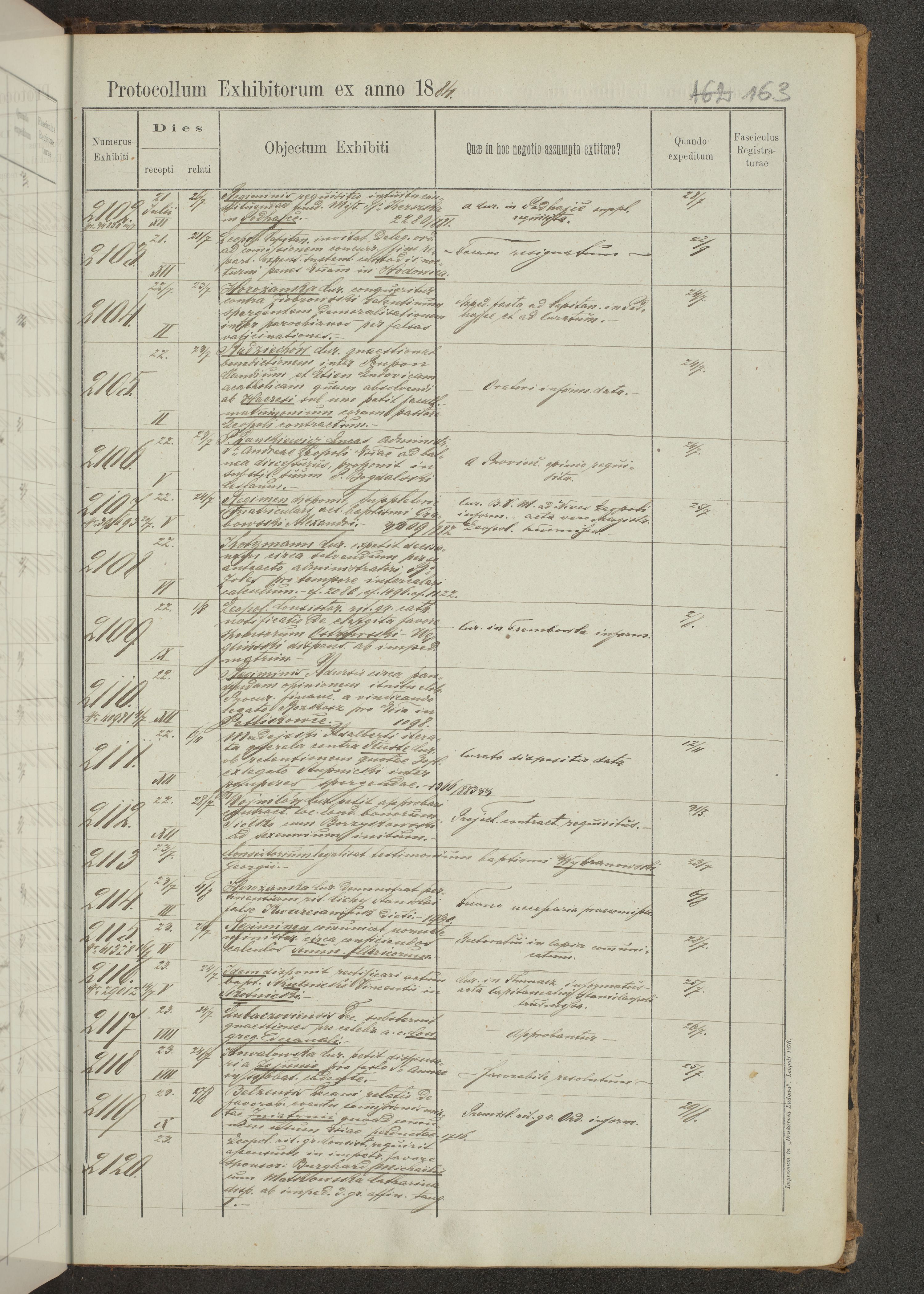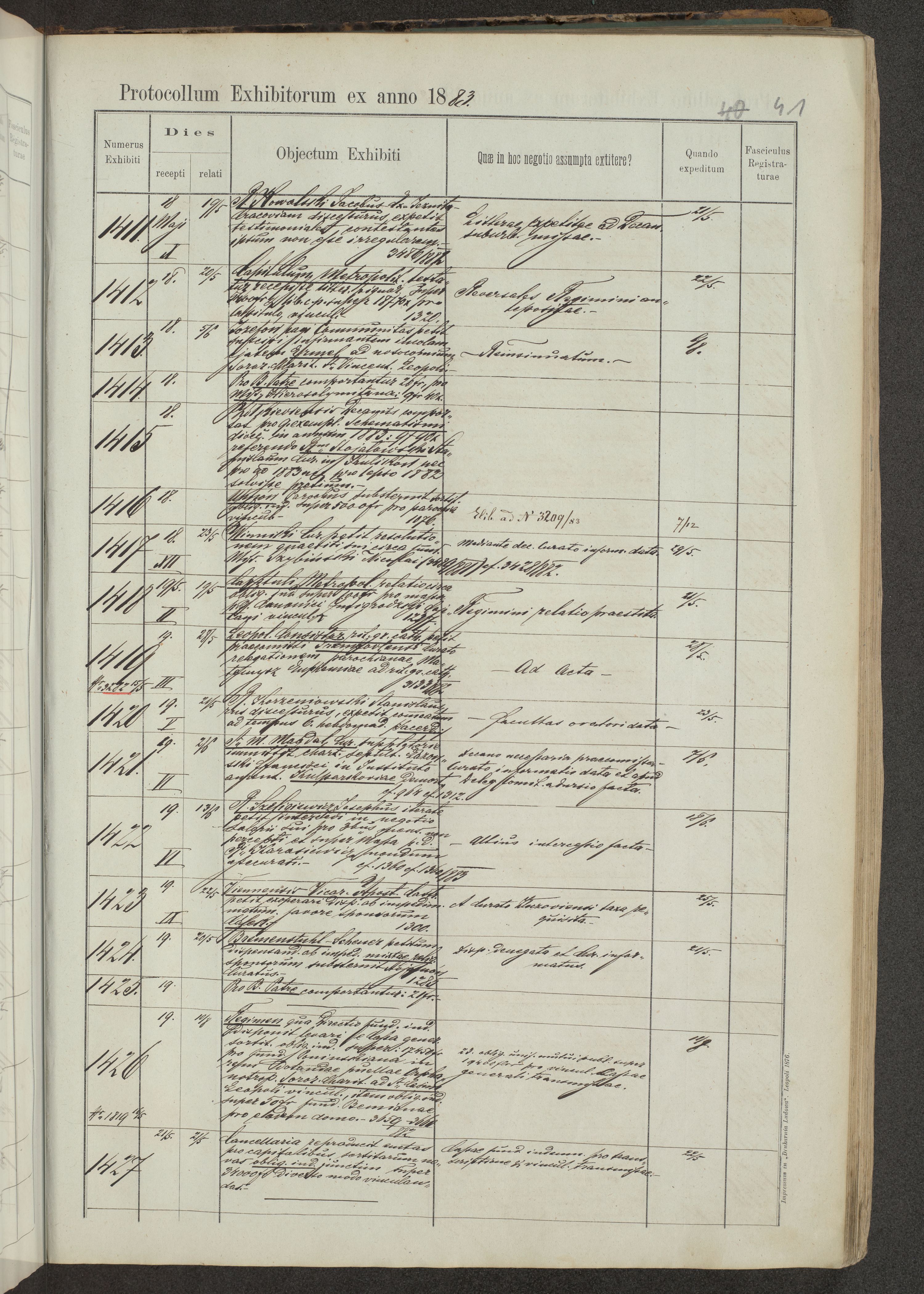 Protocollon exhibitorum in Ecclesiasticis ex anno 1883-1884